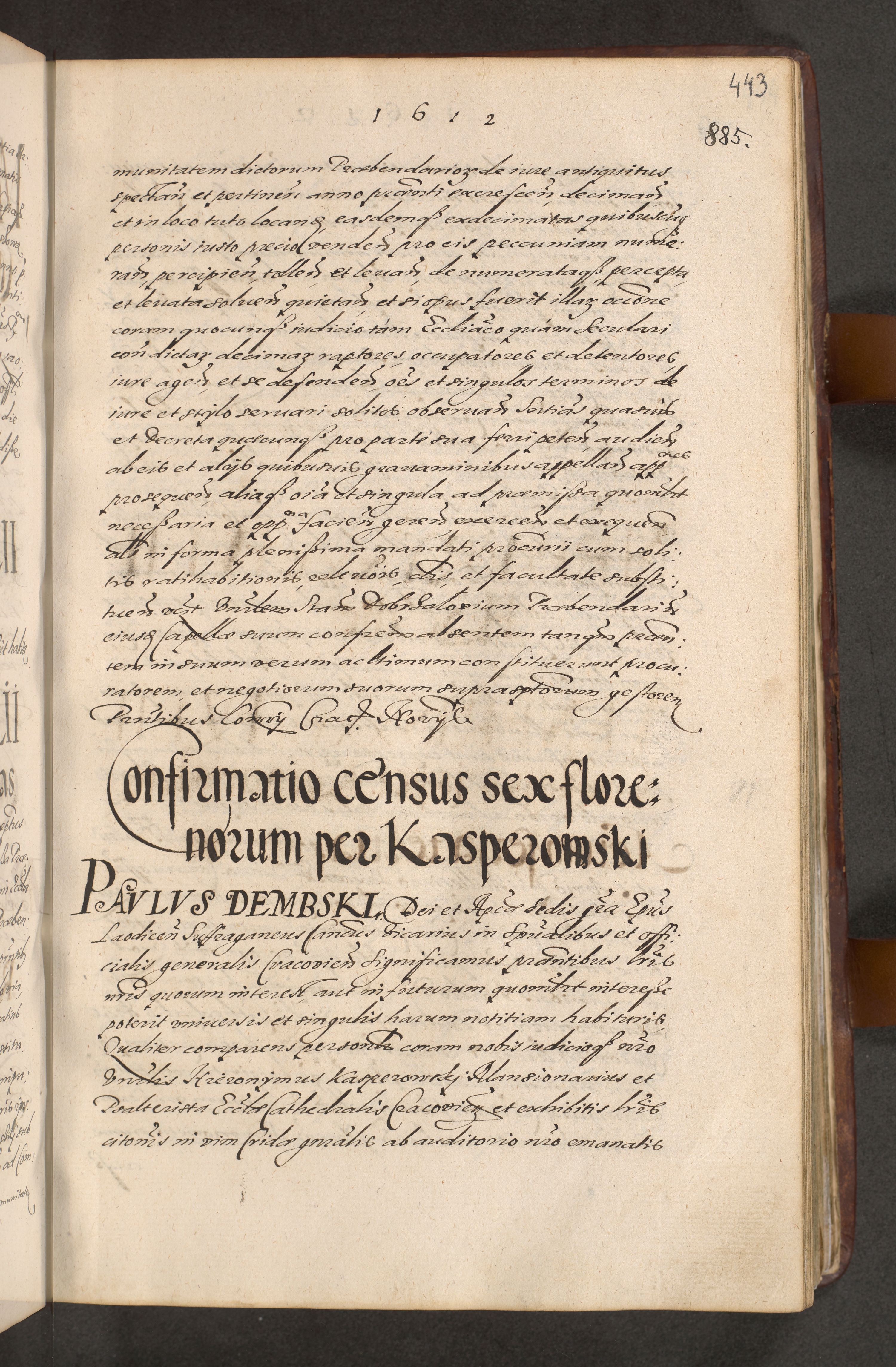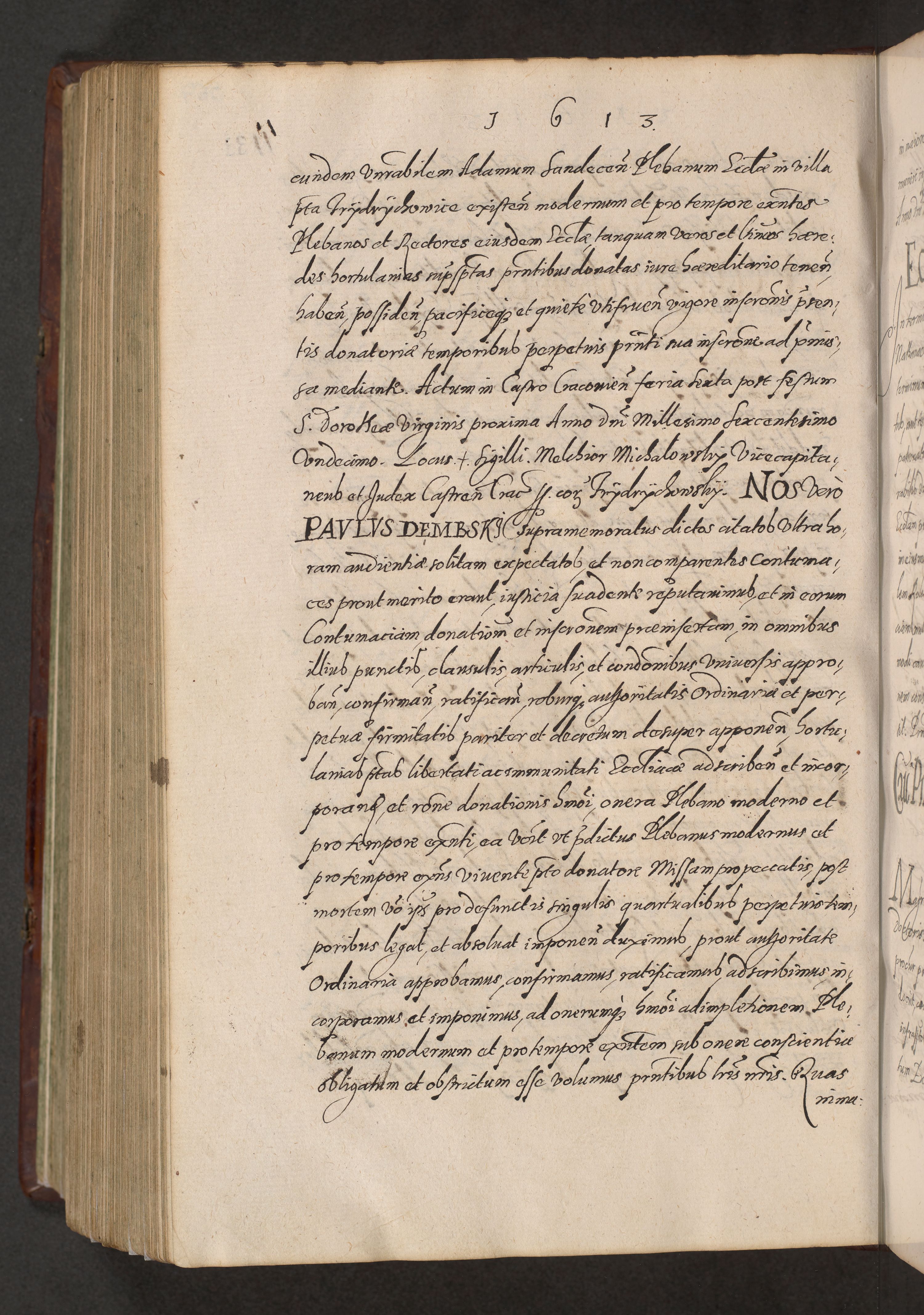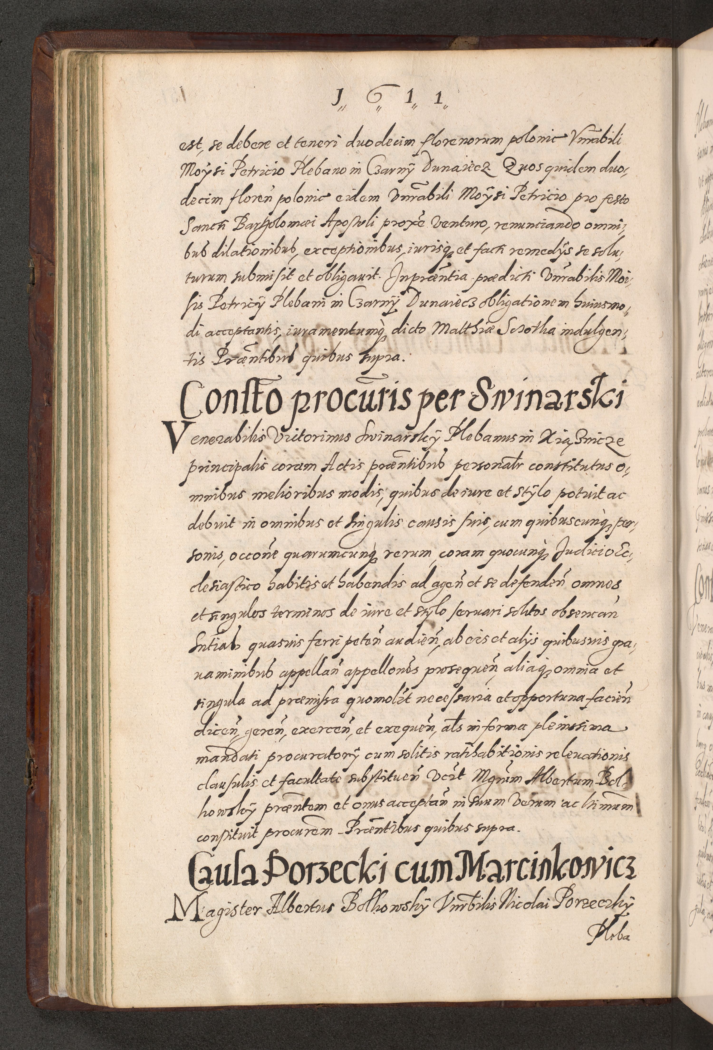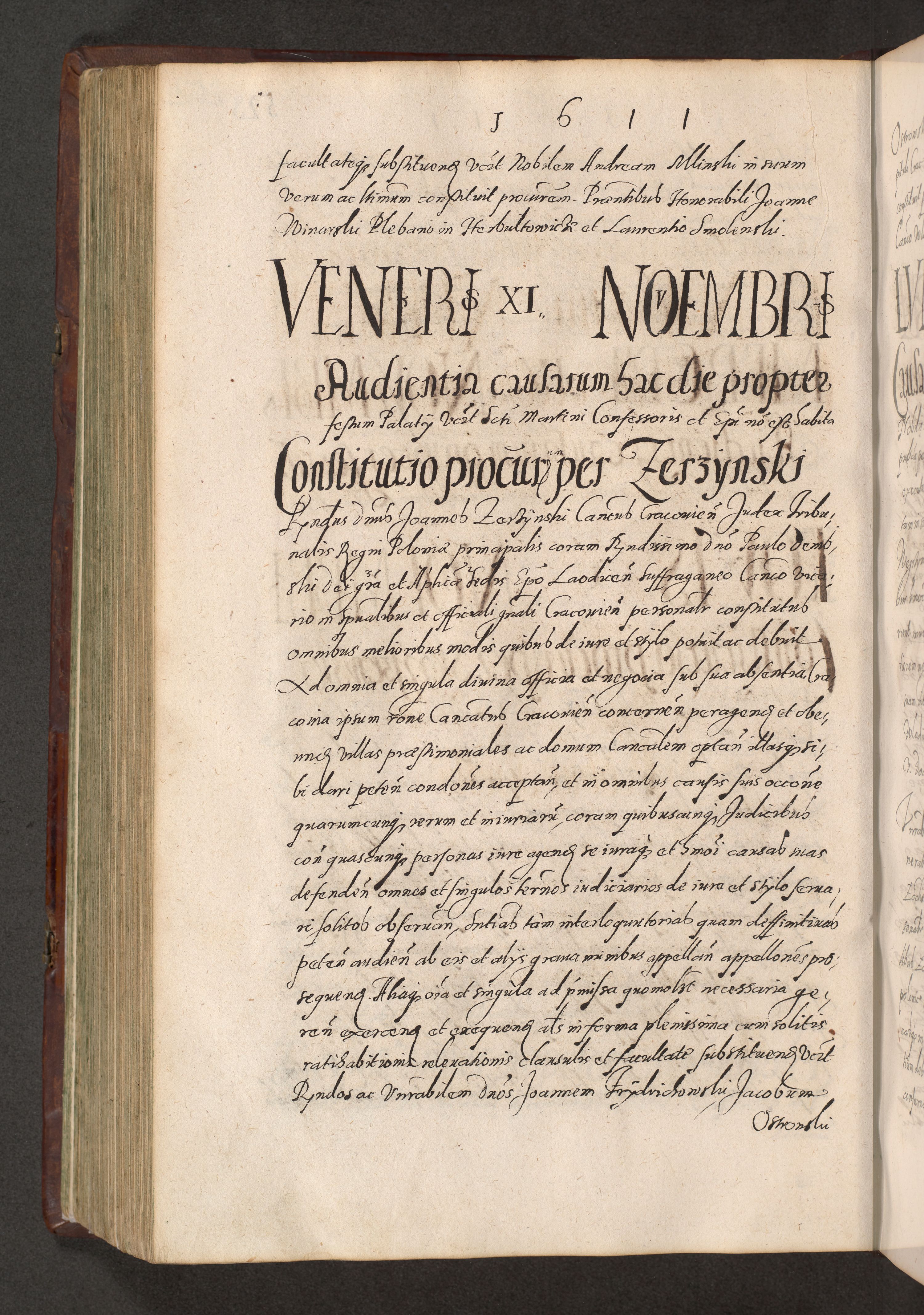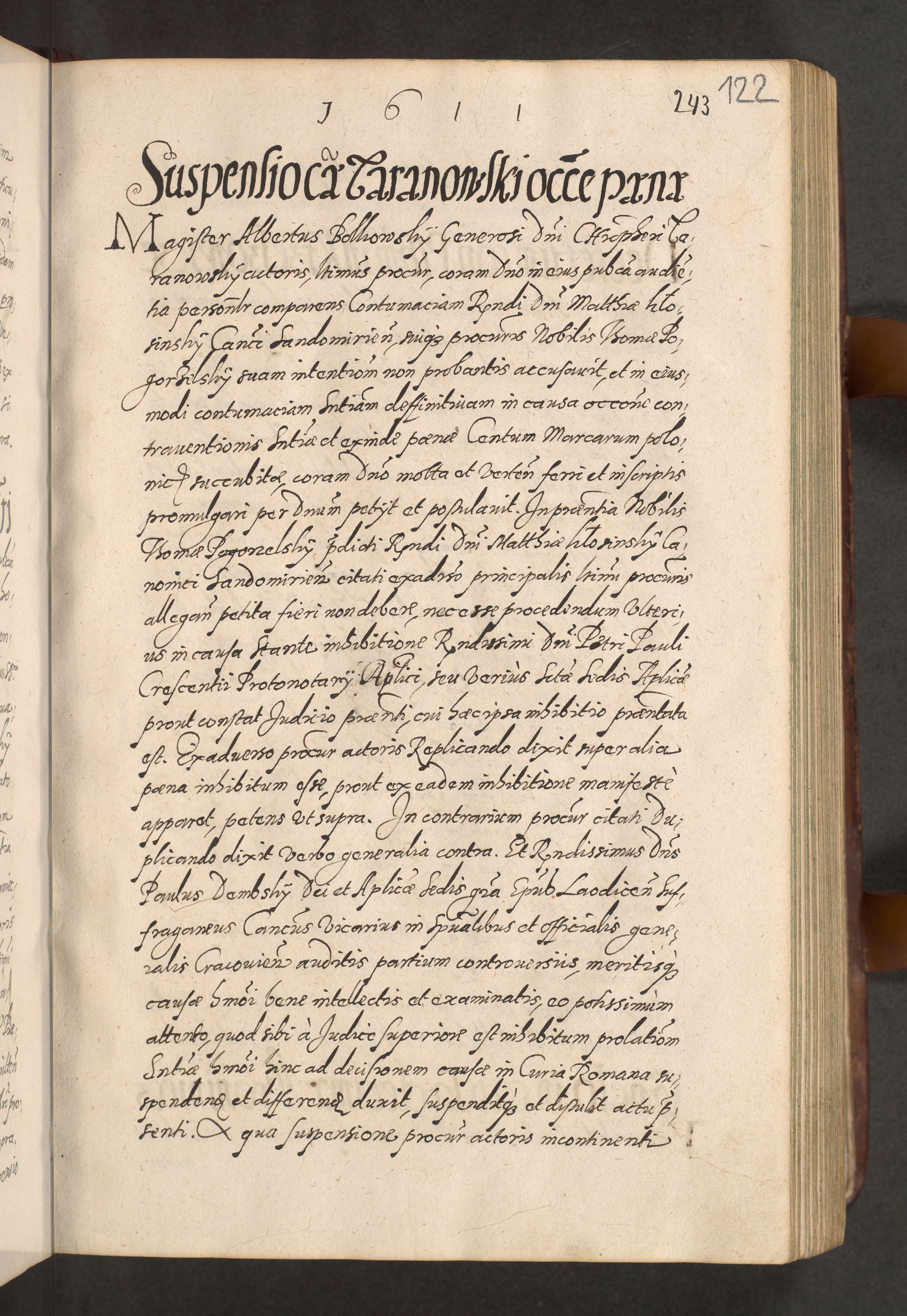 Acta actorum causarum sententiarum tam diffinitiuarum quam interloquutorisrum decretorum obligationum quietationum procuratorum constitutionum etc. etc. coram Reverendo Domino Paulo Dembski Dei et Apostolice Sedis Gratia Episcopalo Dicensis Suffraganeo Canonico Vicario in Spiritualibus et Officiali Generali Cracoviensis ad Annum Domini Millesimum Sexcentesimum Undecimum cuius indictio octava pontificatus Sanctissimi Domini Nostri Domini Pauli Divina Providentia Papae Vti foeliciter continuantur
