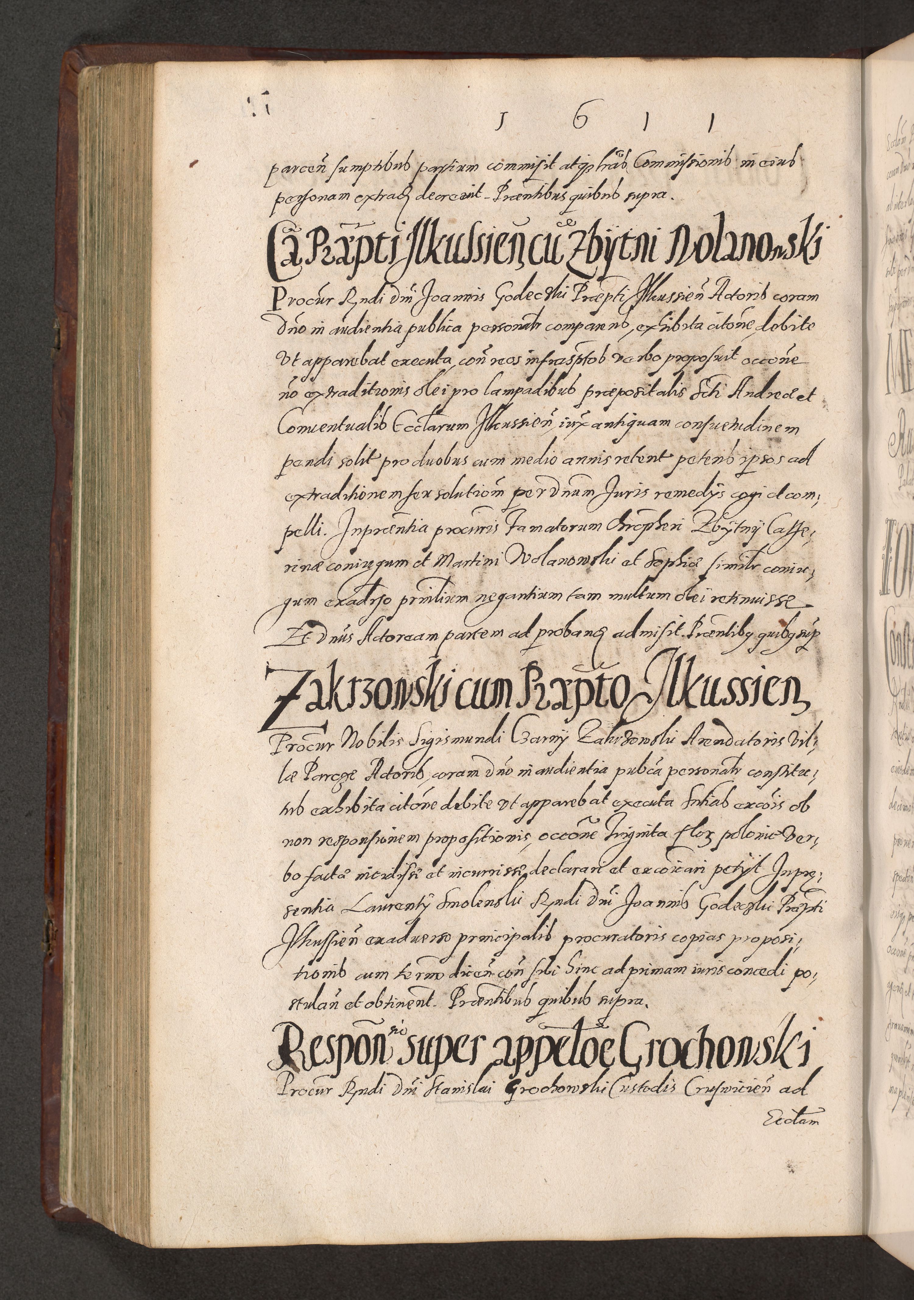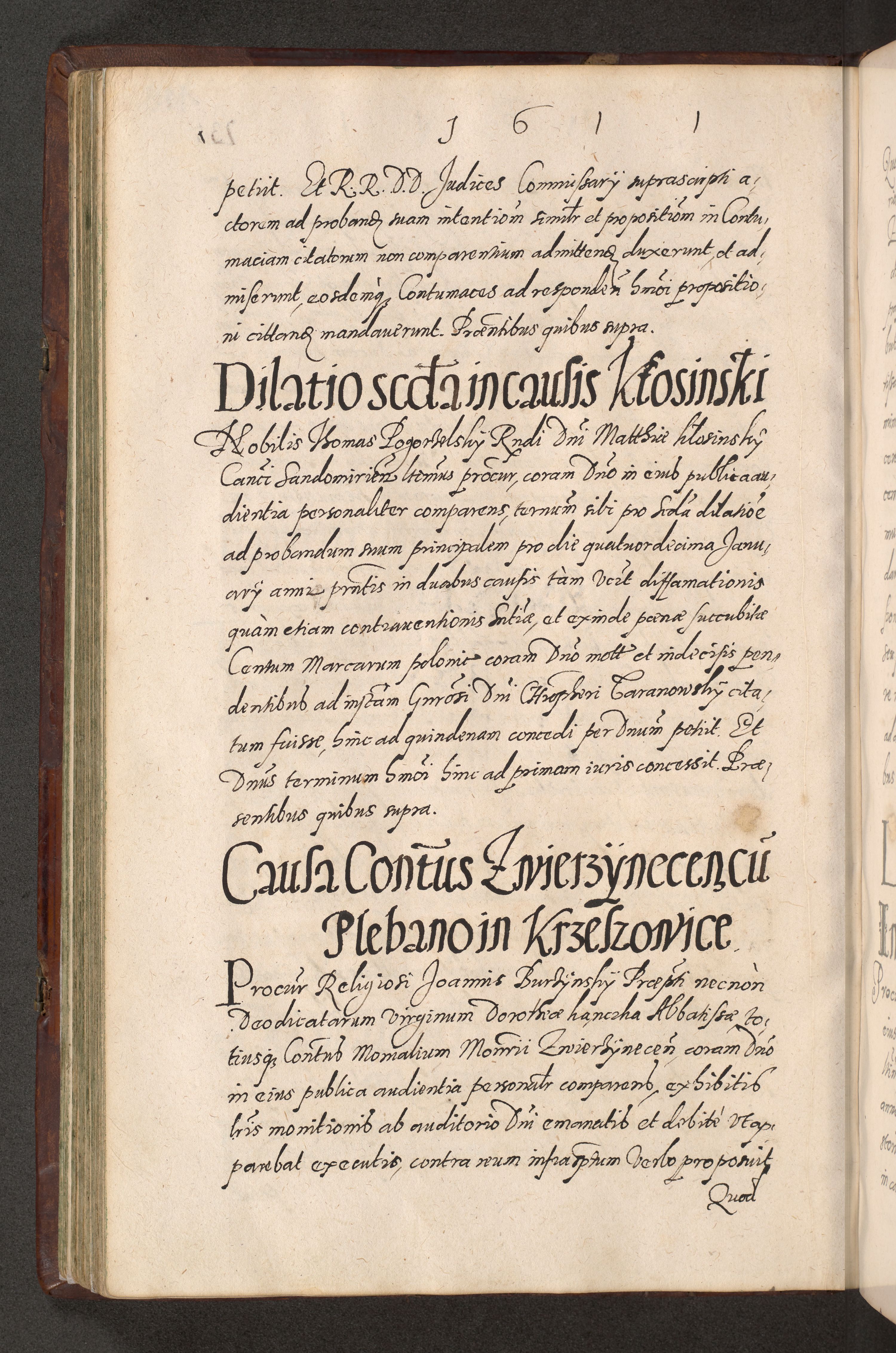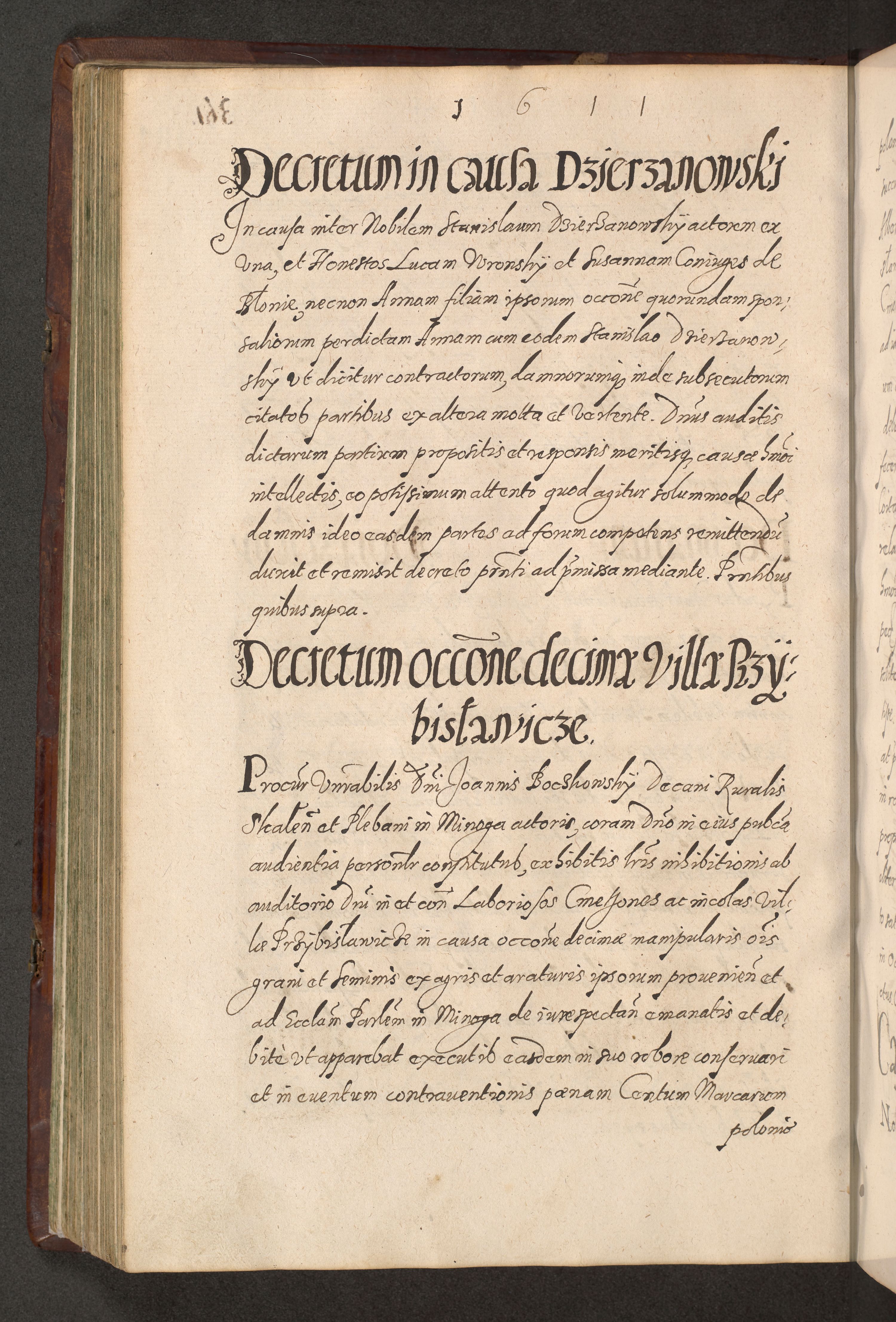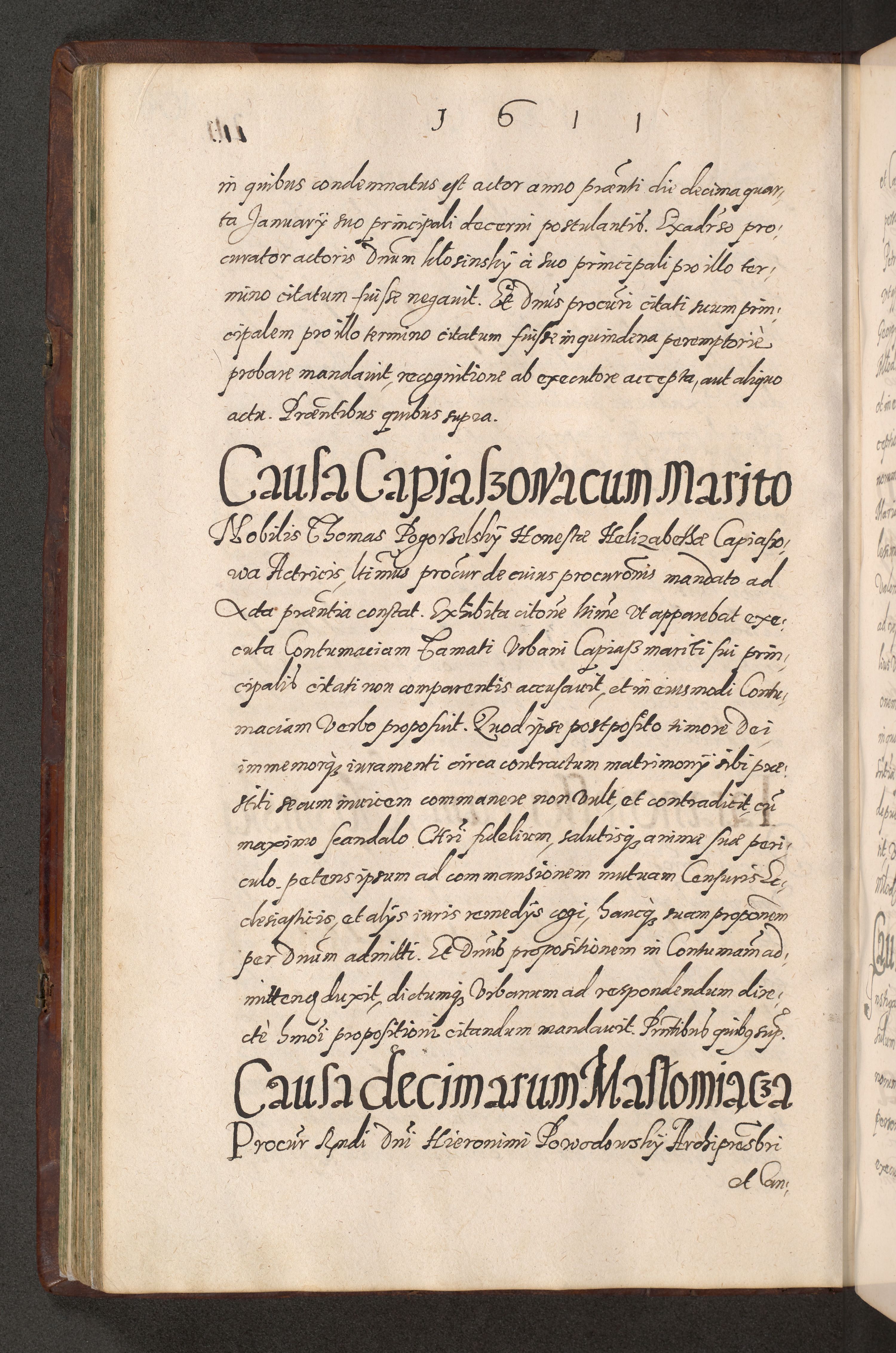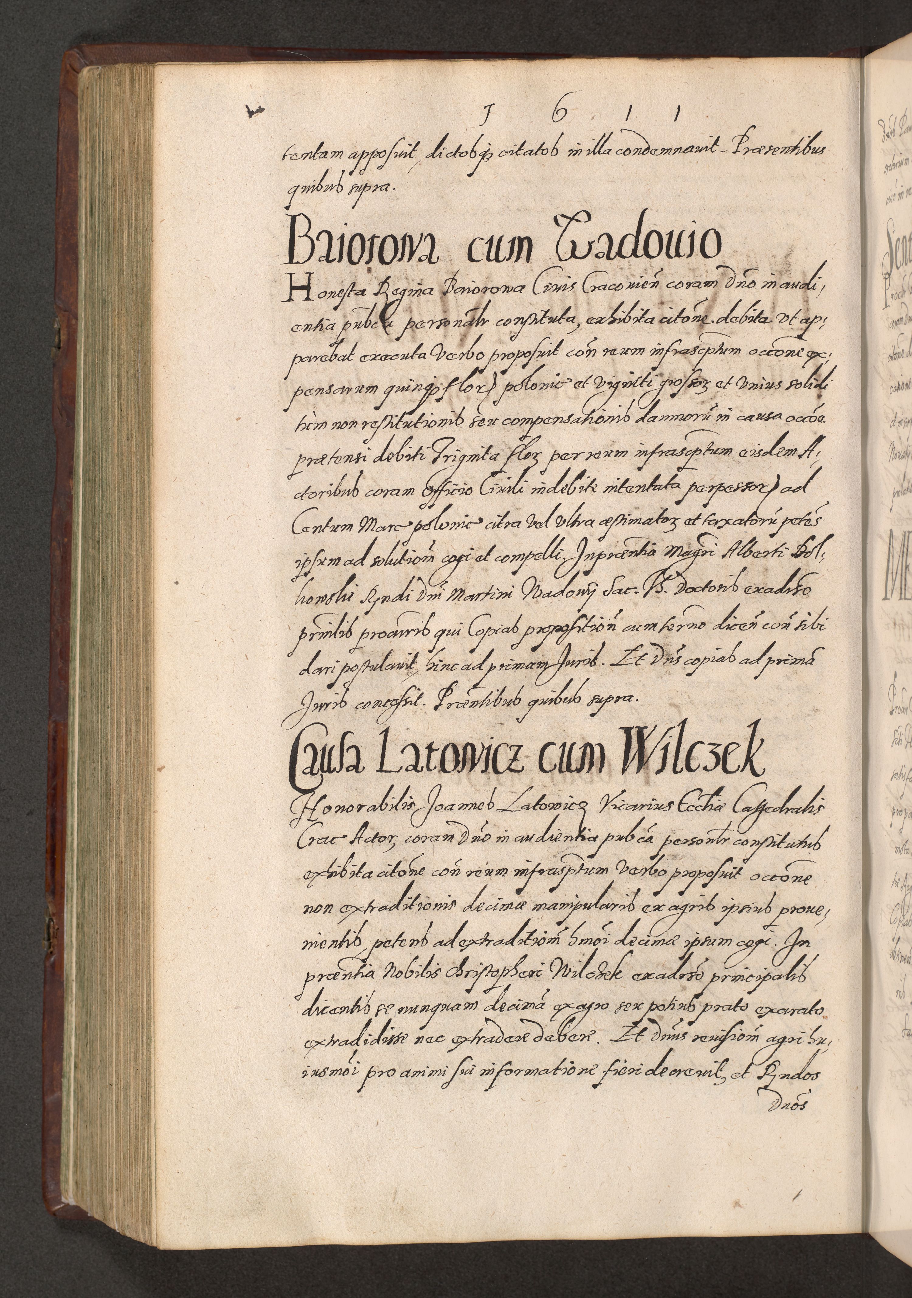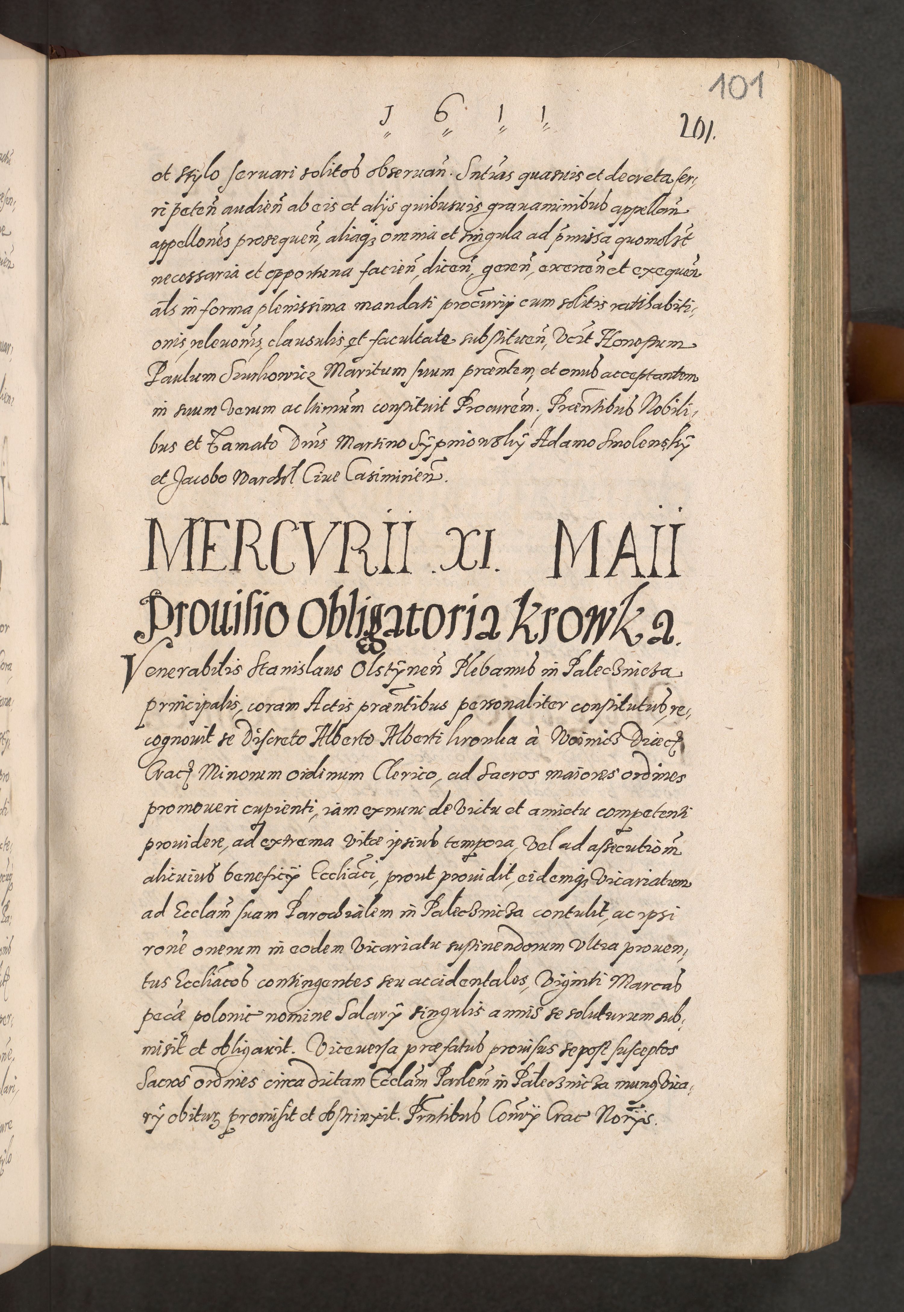 Acta actorum causarum sententiarum tam diffinitiuarum quam interloquutorisrum decretorum obligationum quietationum procuratorum constitutionum etc. etc. coram Reverendo Domino Paulo Dembski Dei et Apostolice Sedis Gratia Episcopalo Dicensis Suffraganeo Canonico Vicario in Spiritualibus et Officiali Generali Cracoviensis ad Annum Domini Millesimum Sexcentesimum Undecimum cuius indictio octava pontificatus Sanctissimi Domini Nostri Domini Pauli Divina Providentia Papae Vti foeliciter continuantur