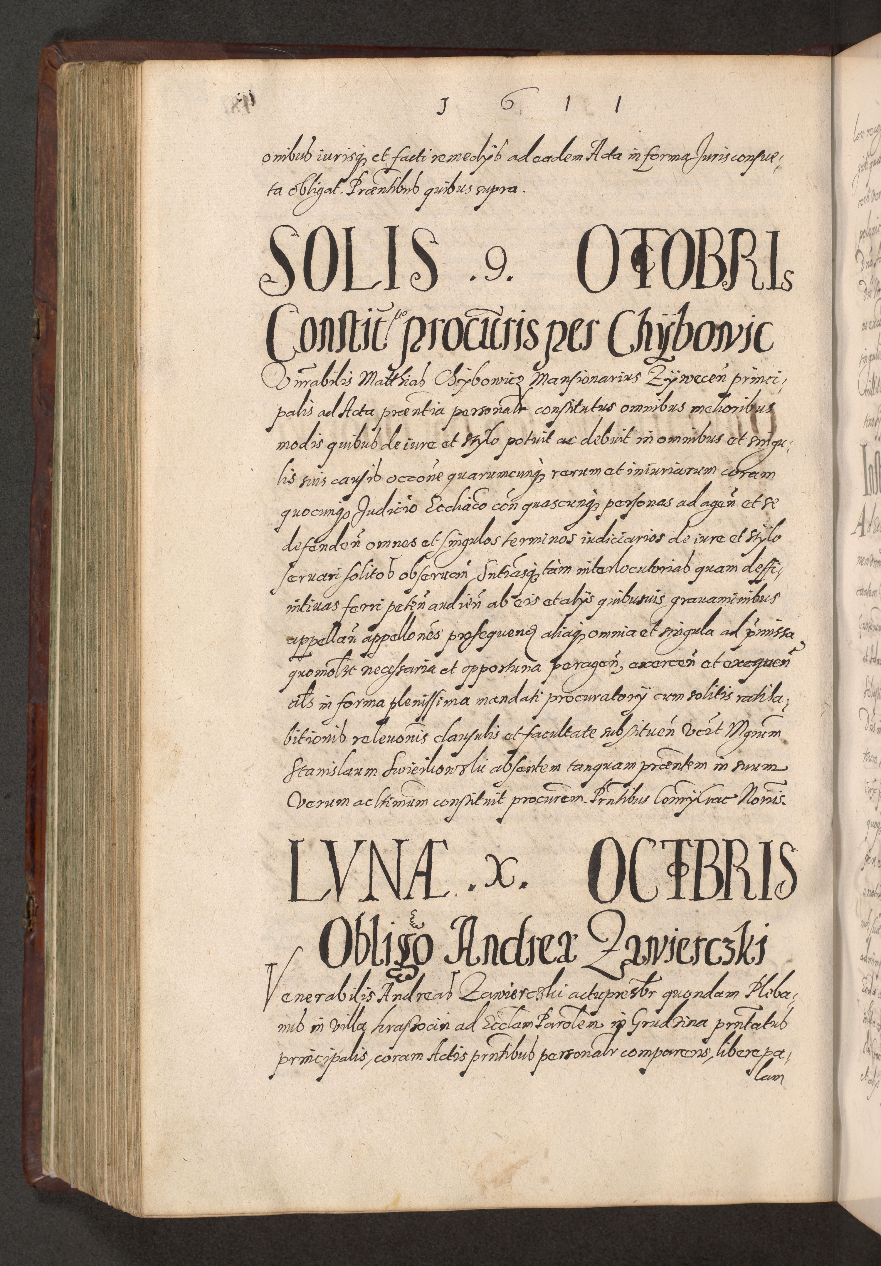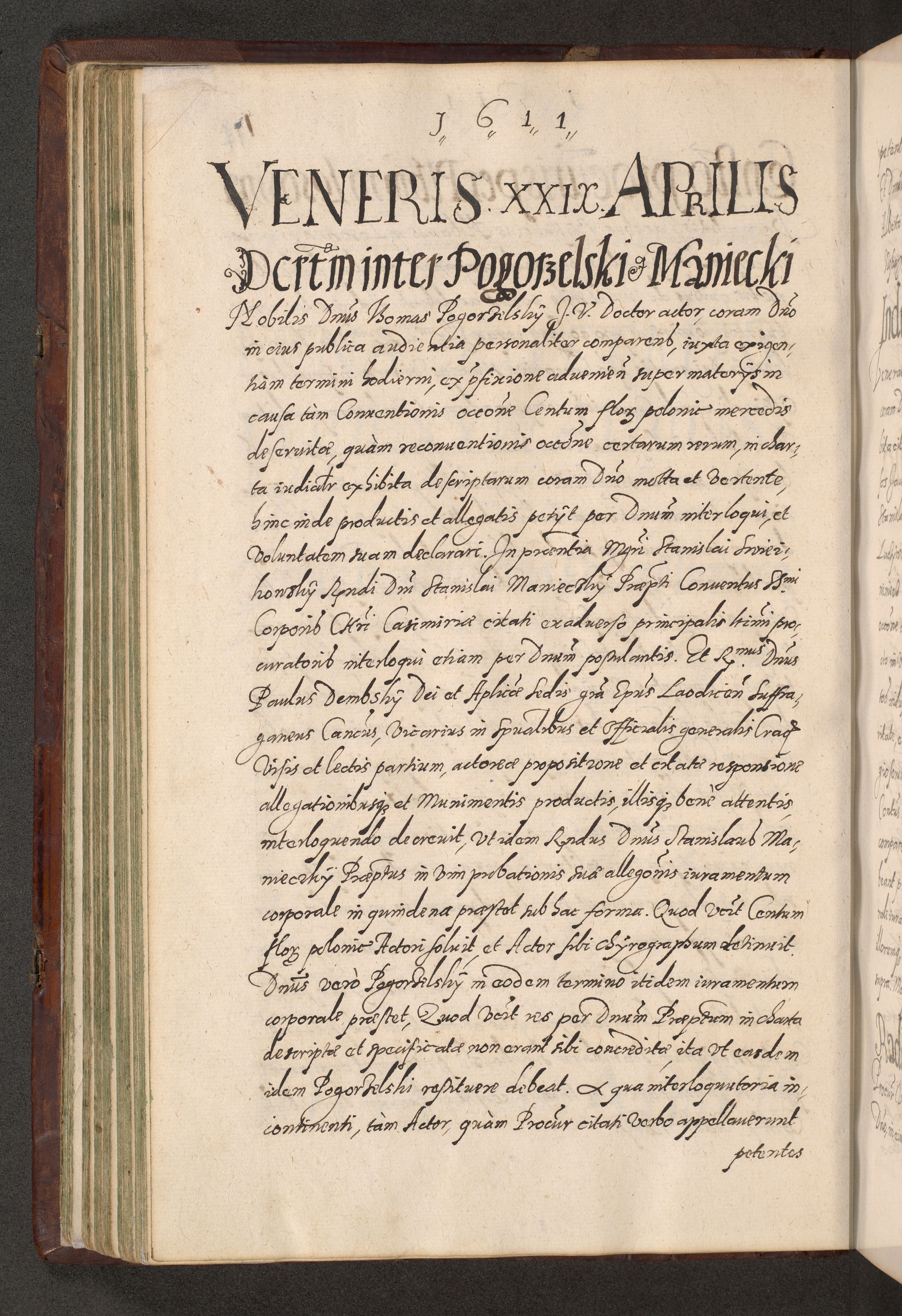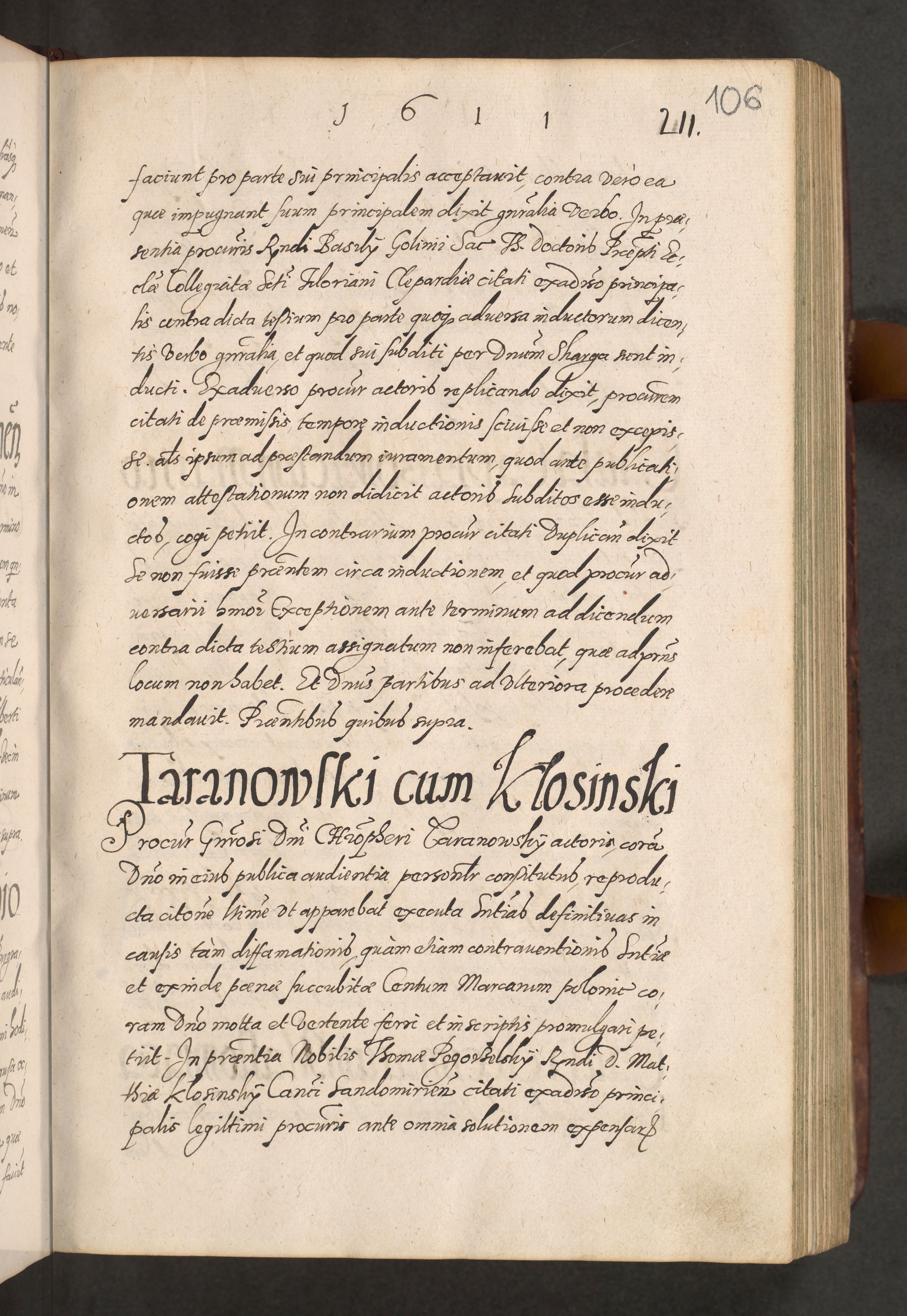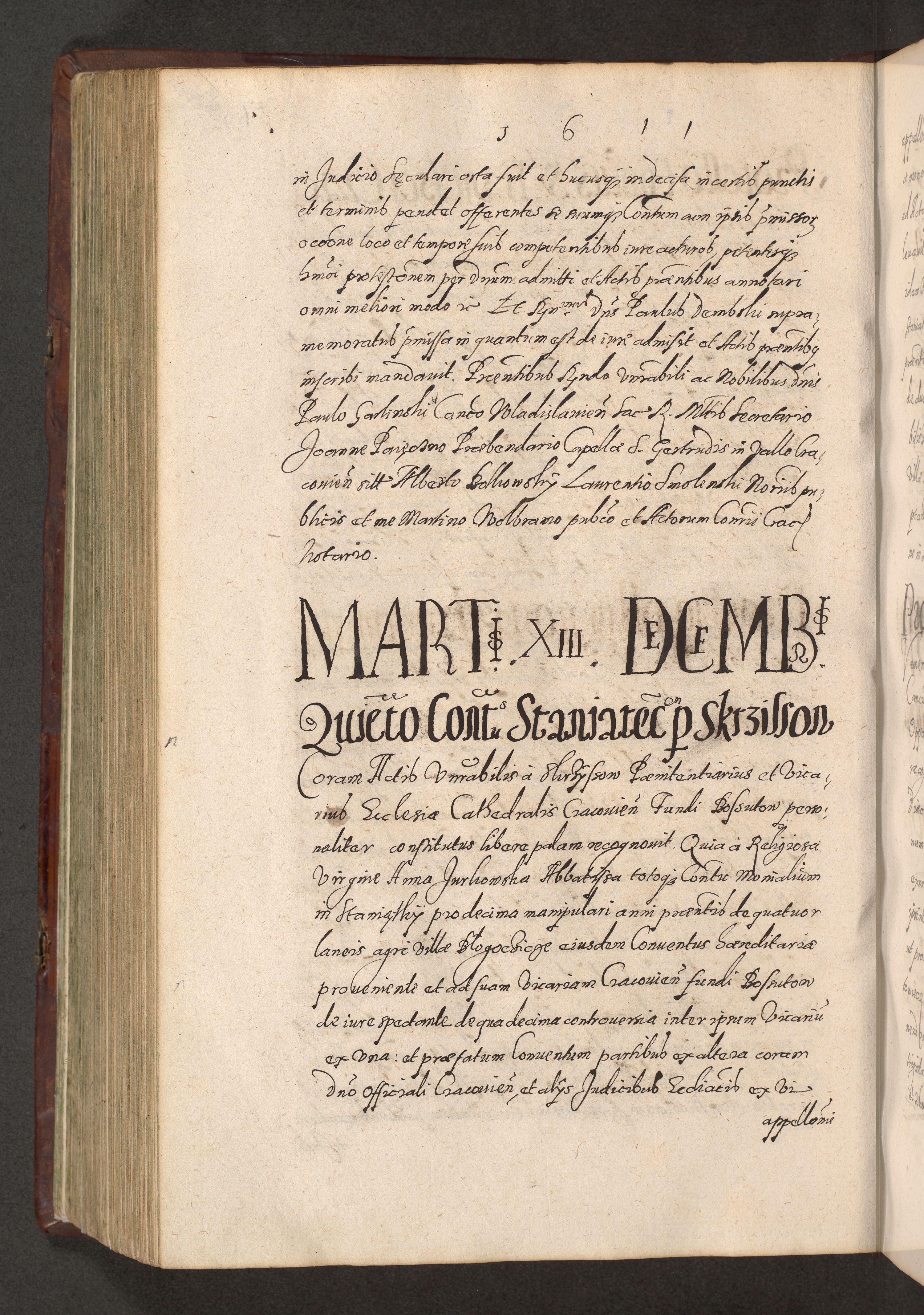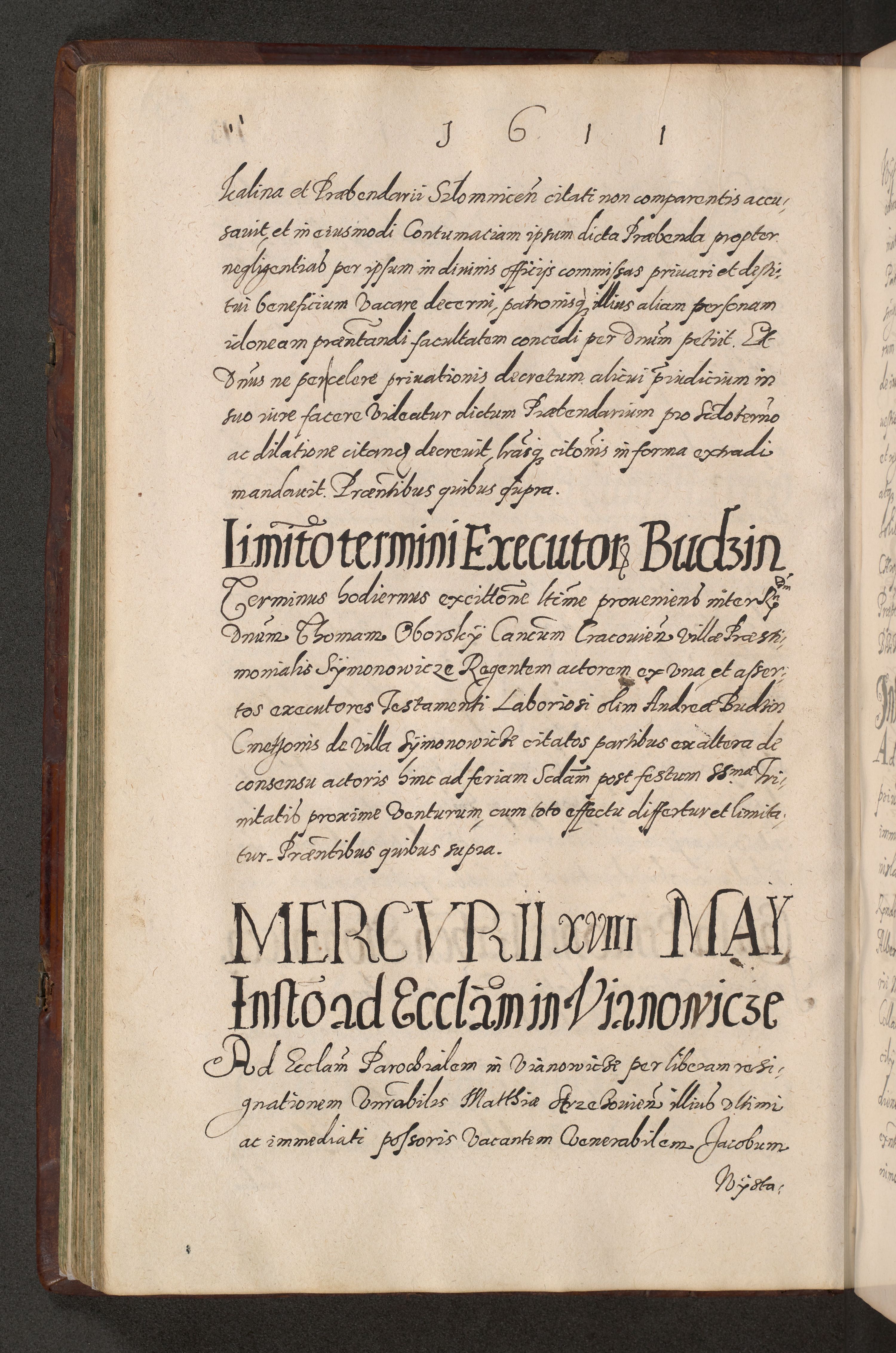 Acta actorum causarum sententiarum tam diffinitiuarum quam interloquutorisrum decretorum obligationum quietationum procuratorum constitutionum etc. etc. coram Reverendo Domino Paulo Dembski Dei et Apostolice Sedis Gratia Episcopalo Dicensis Suffraganeo Canonico Vicario in Spiritualibus et Officiali Generali Cracoviensis ad Annum Domini Millesimum Sexcentesimum Undecimum cuius indictio octava pontificatus Sanctissimi Domini Nostri Domini Pauli Divina Providentia Papae Vti foeliciter continuantur