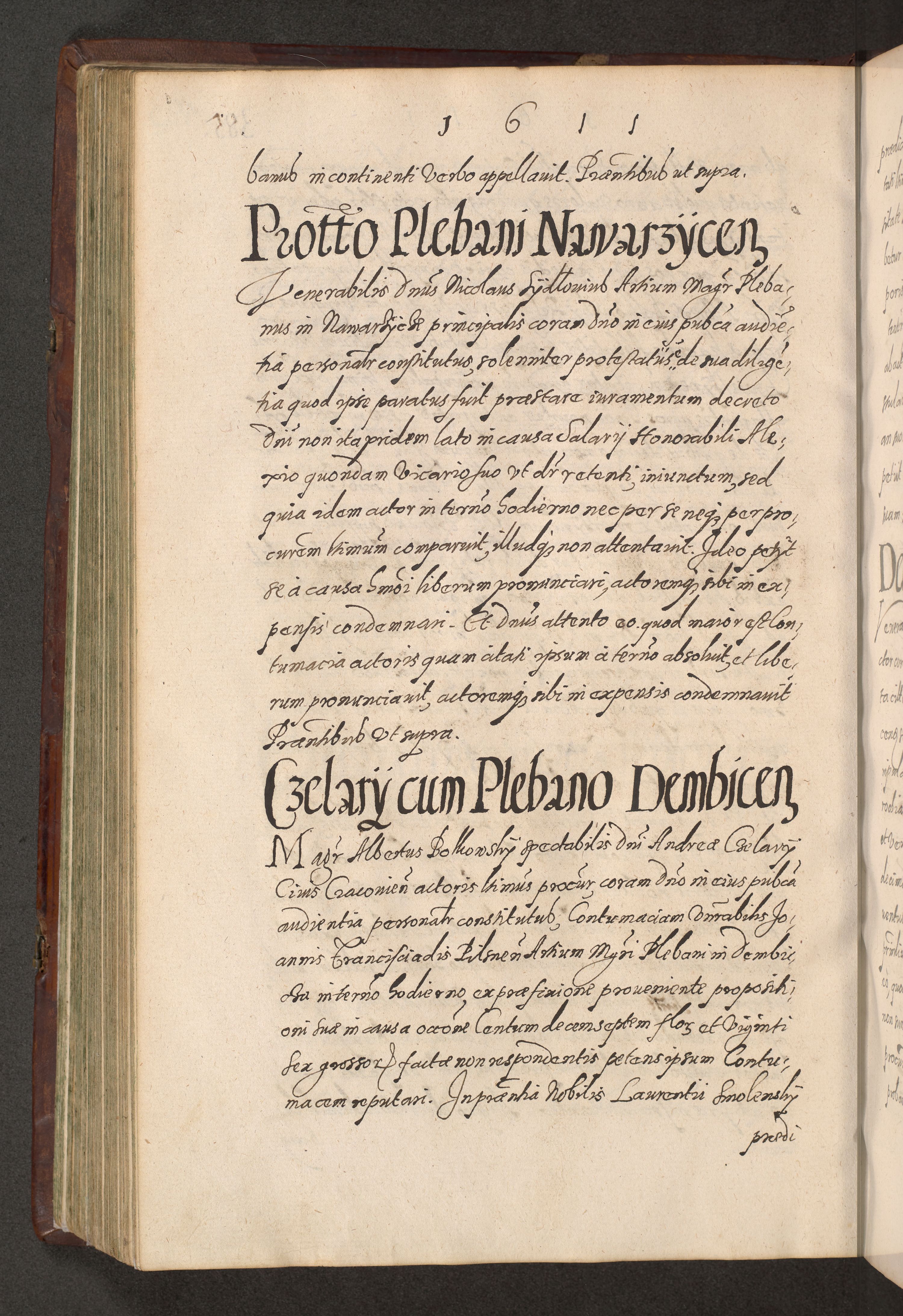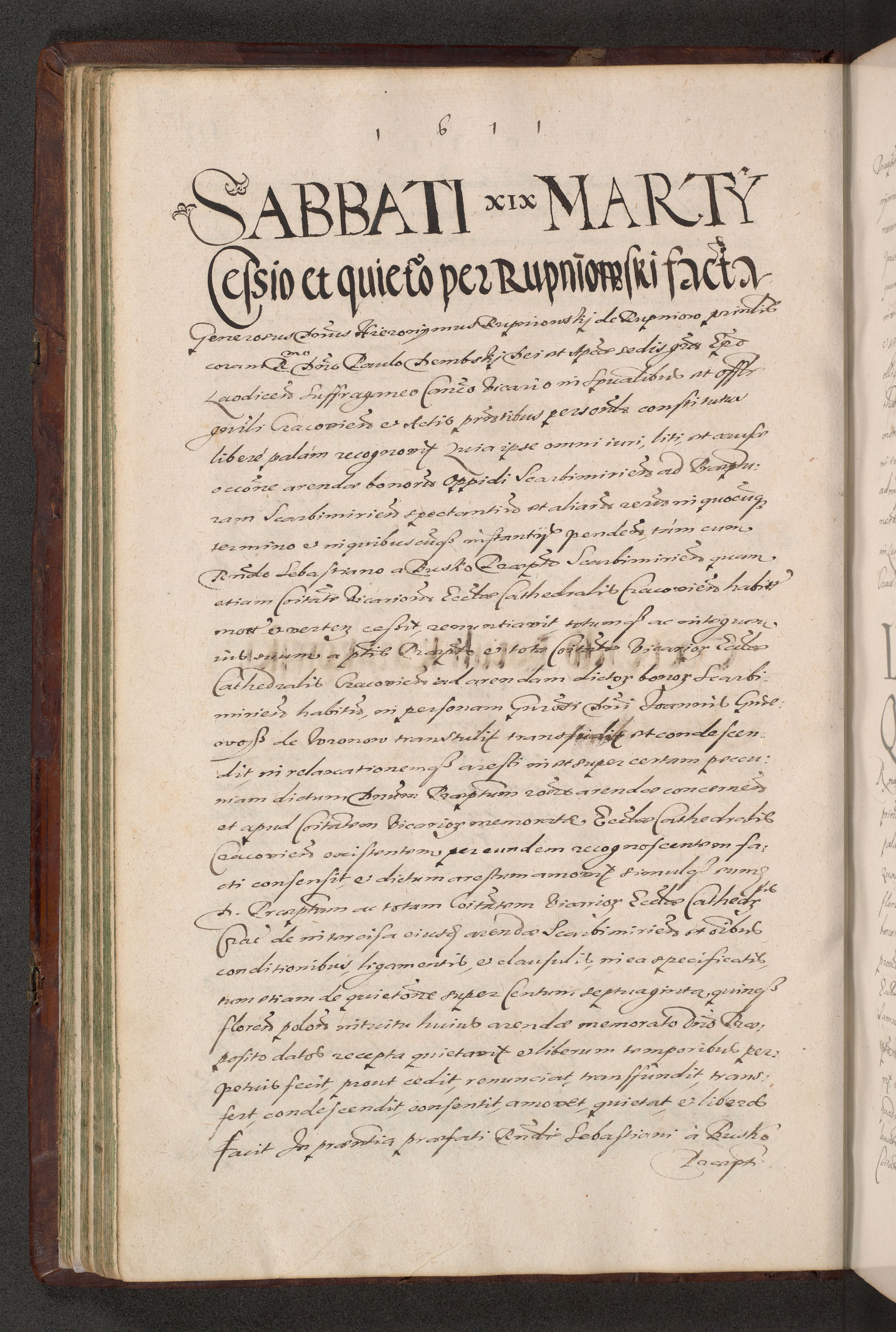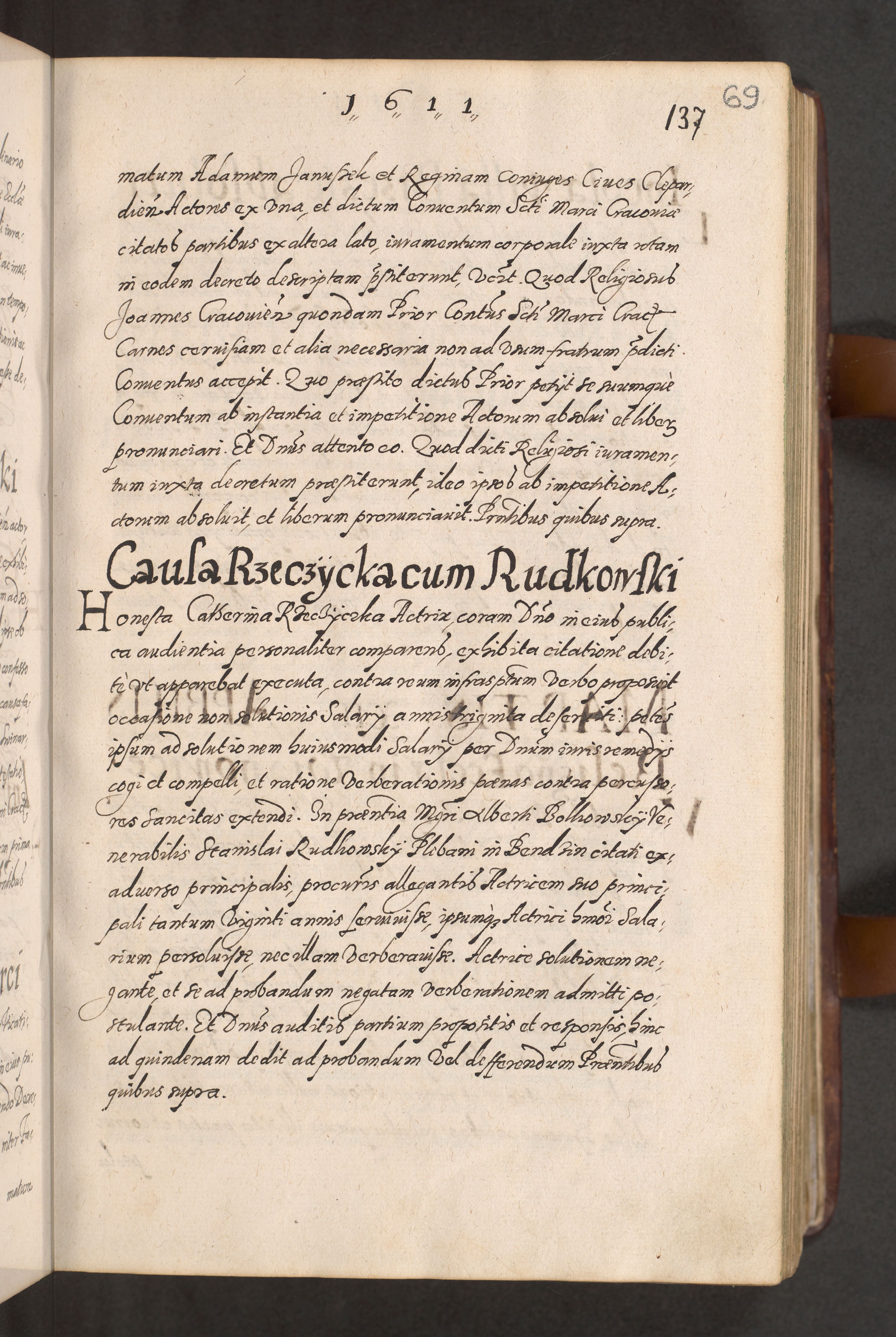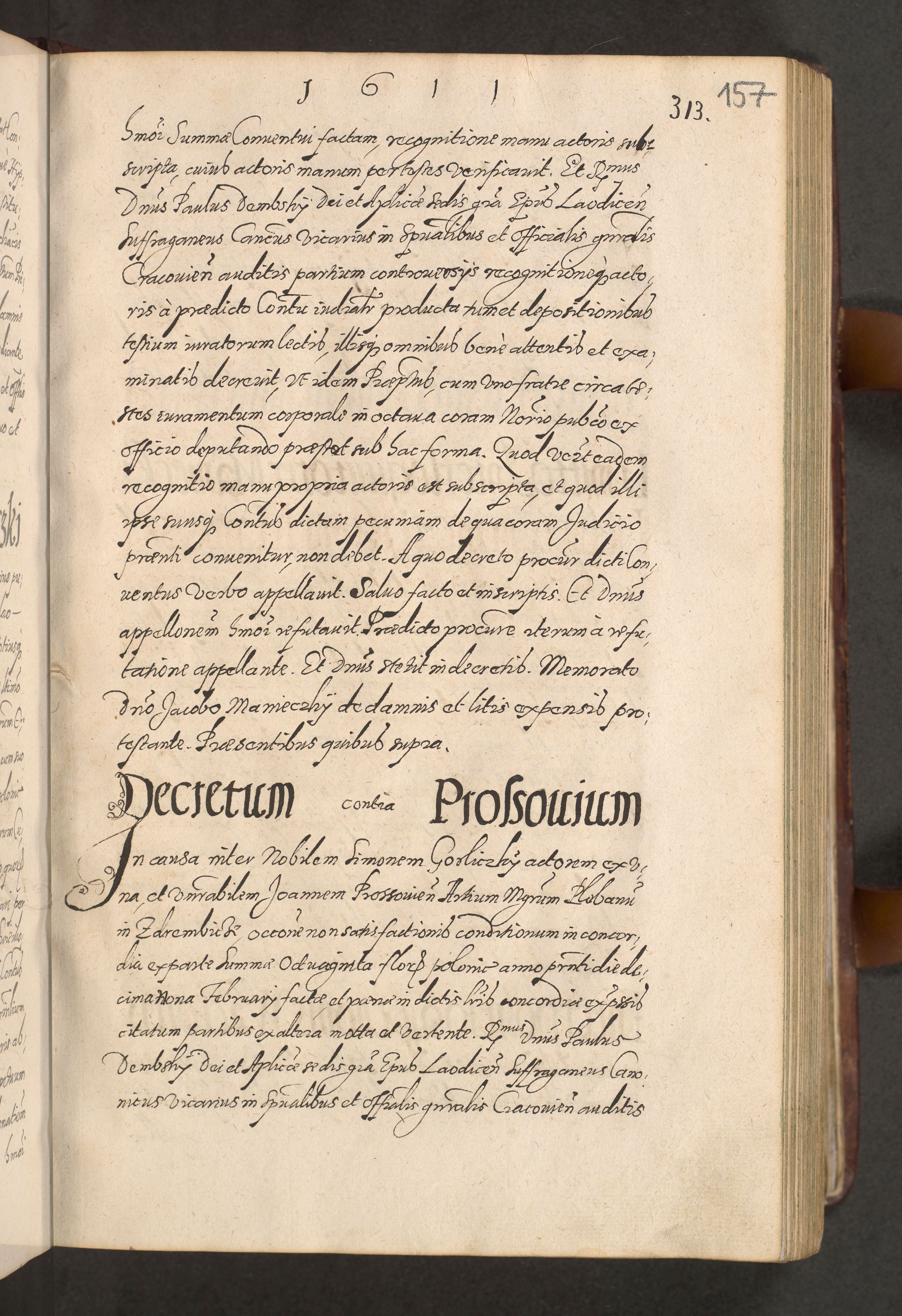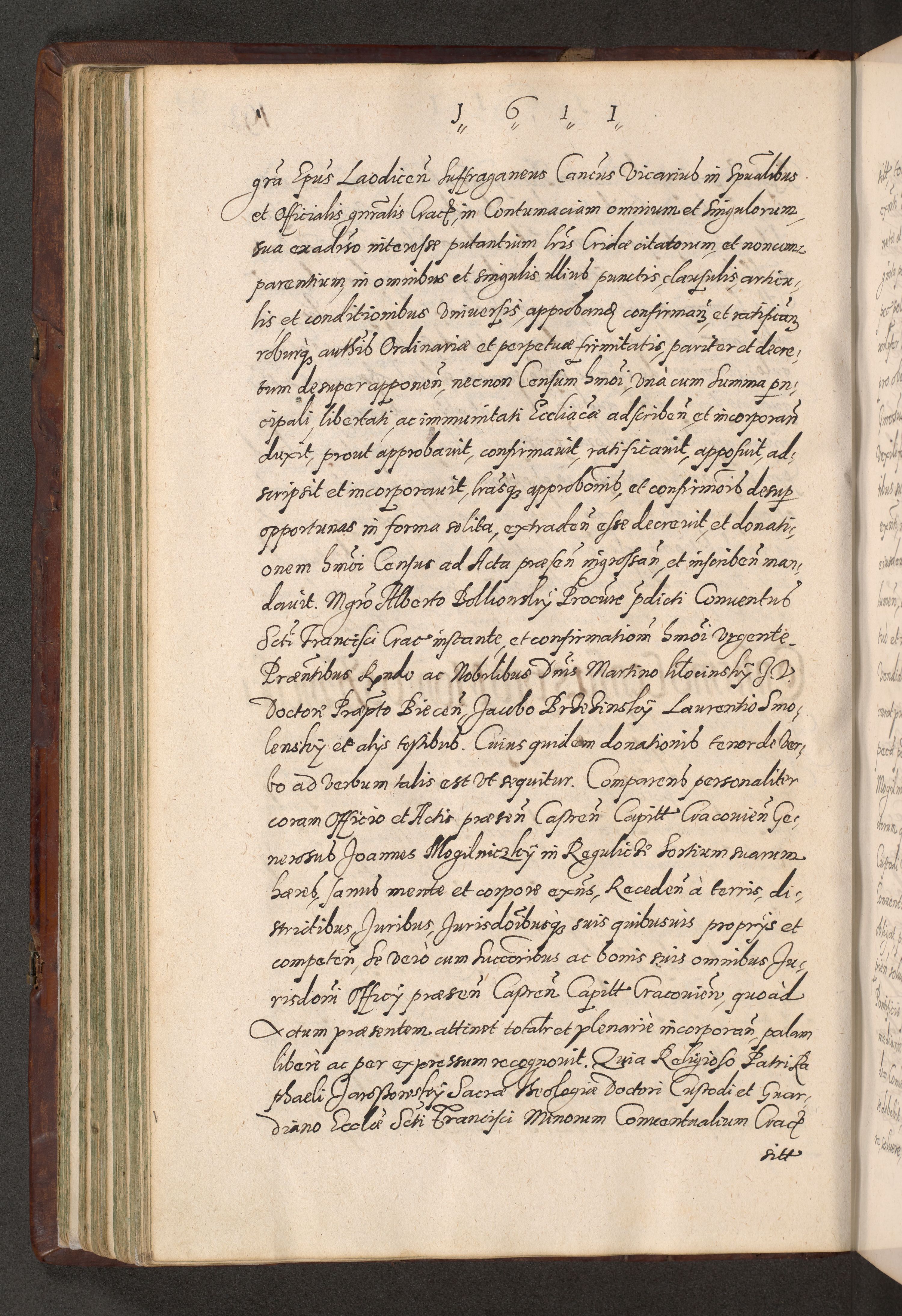 Acta actorum causarum sententiarum tam diffinitiuarum quam interloquutorisrum decretorum obligationum quietationum procuratorum constitutionum etc. etc. coram Reverendo Domino Paulo Dembski Dei et Apostolice Sedis Gratia Episcopalo Dicensis Suffraganeo Canonico Vicario in Spiritualibus et Officiali Generali Cracoviensis ad Annum Domini Millesimum Sexcentesimum Undecimum cuius indictio octava pontificatus Sanctissimi Domini Nostri Domini Pauli Divina Providentia Papae Vti foeliciter continuantur