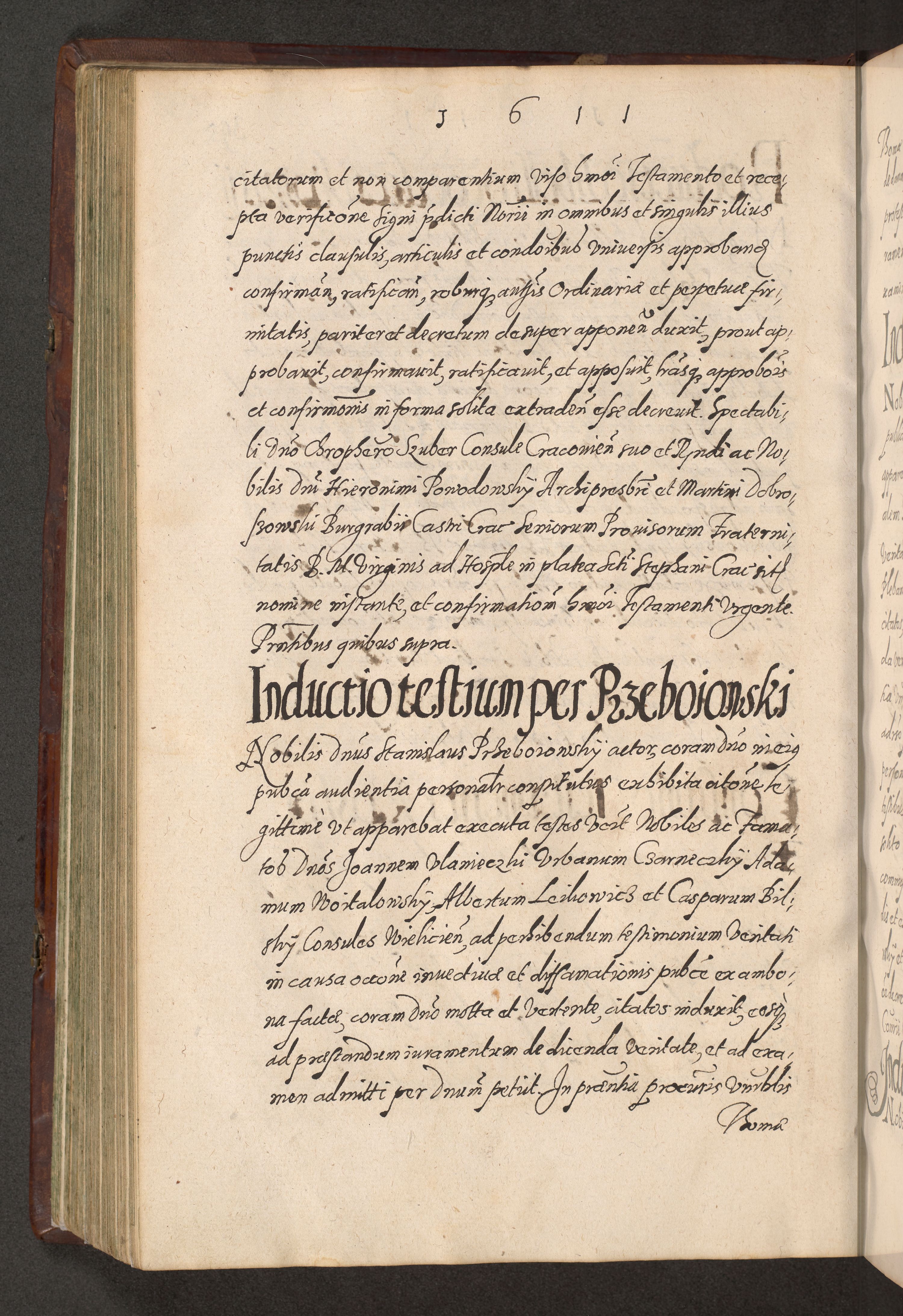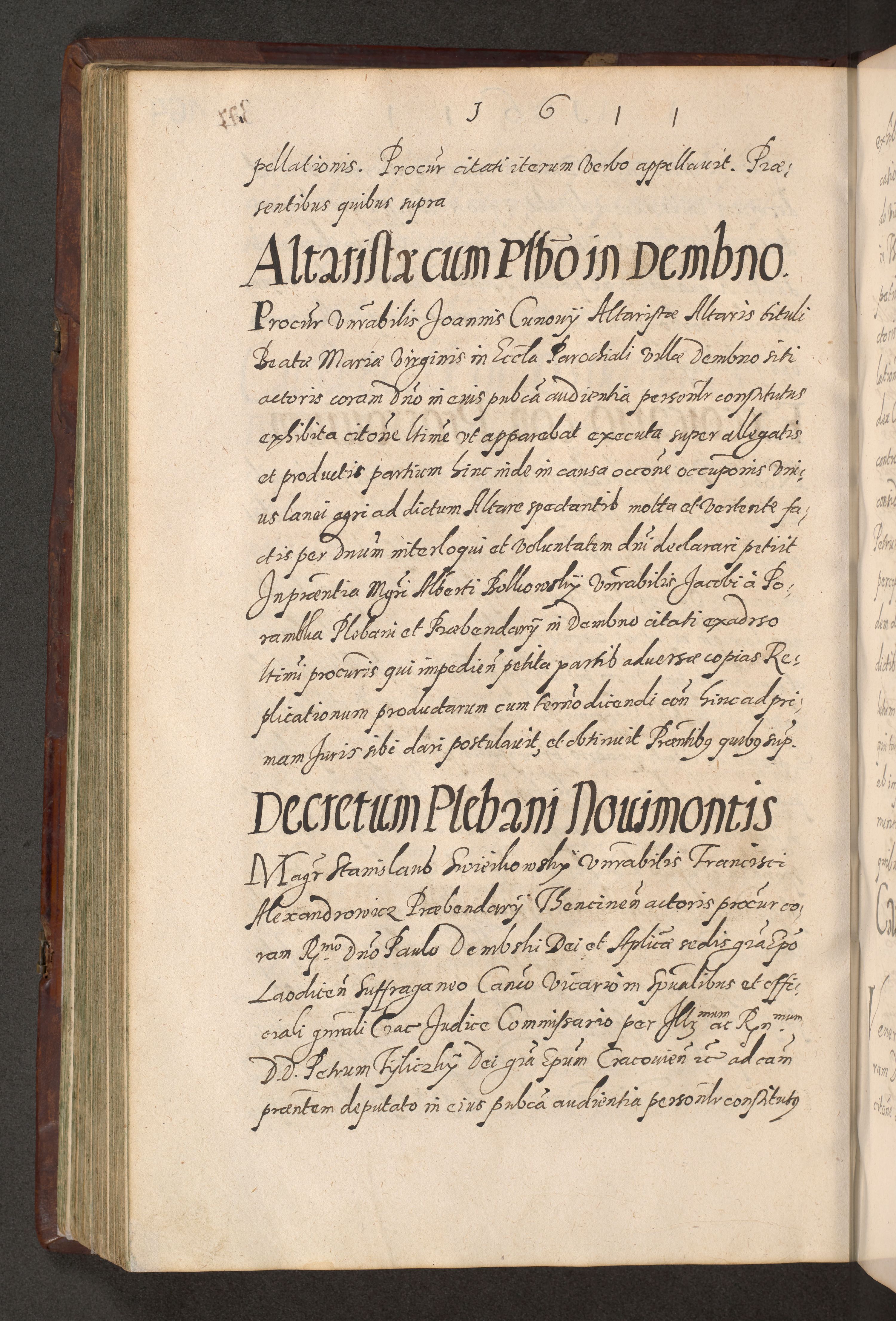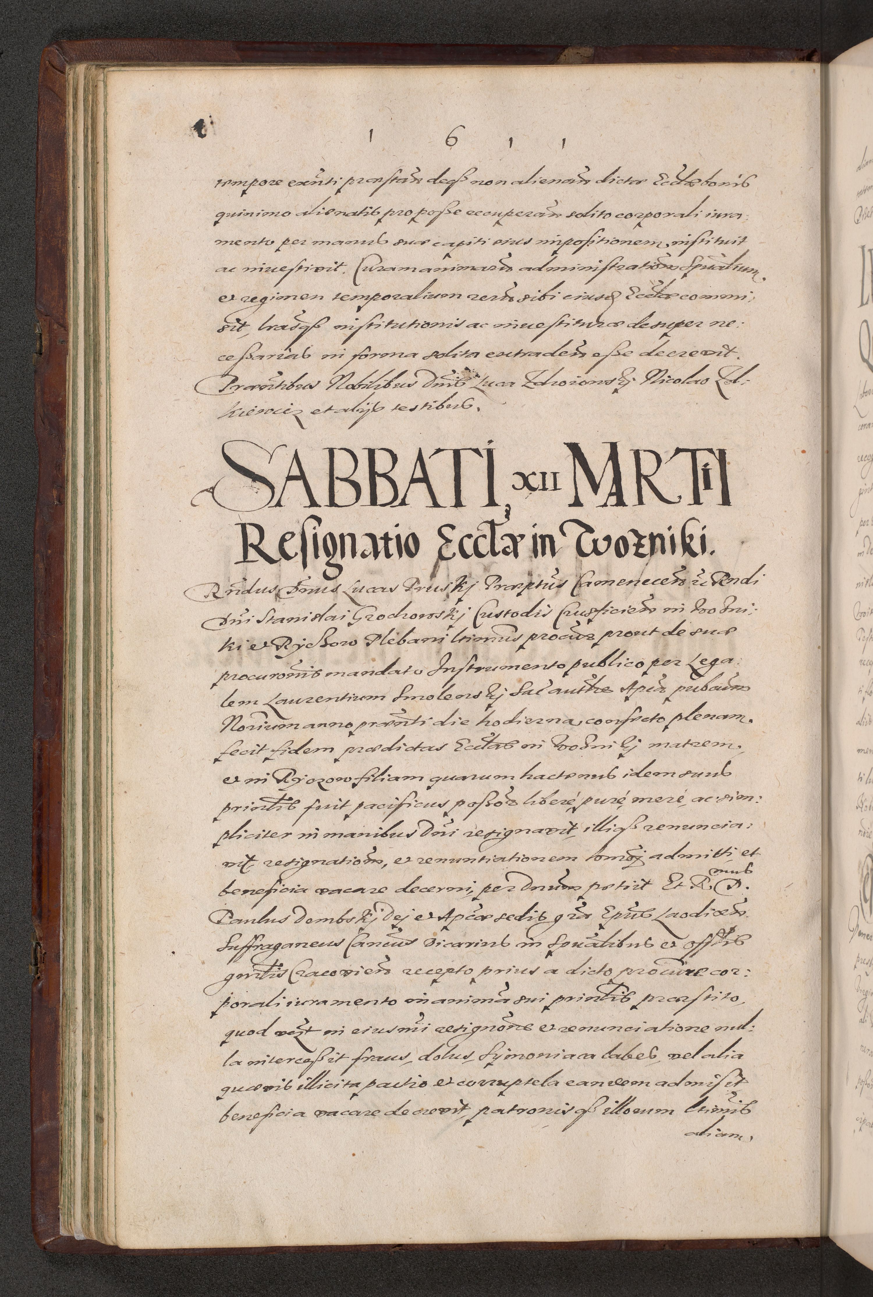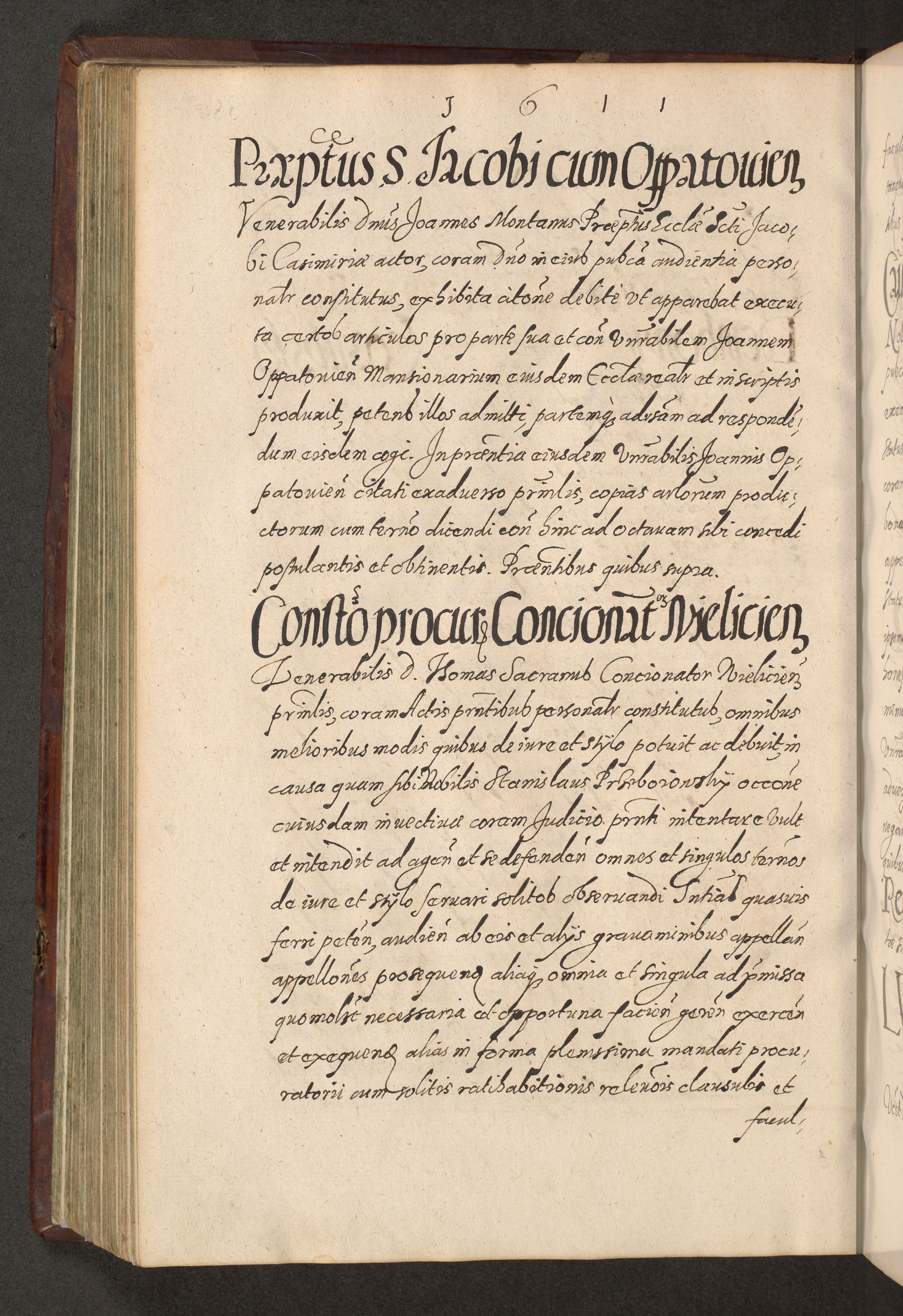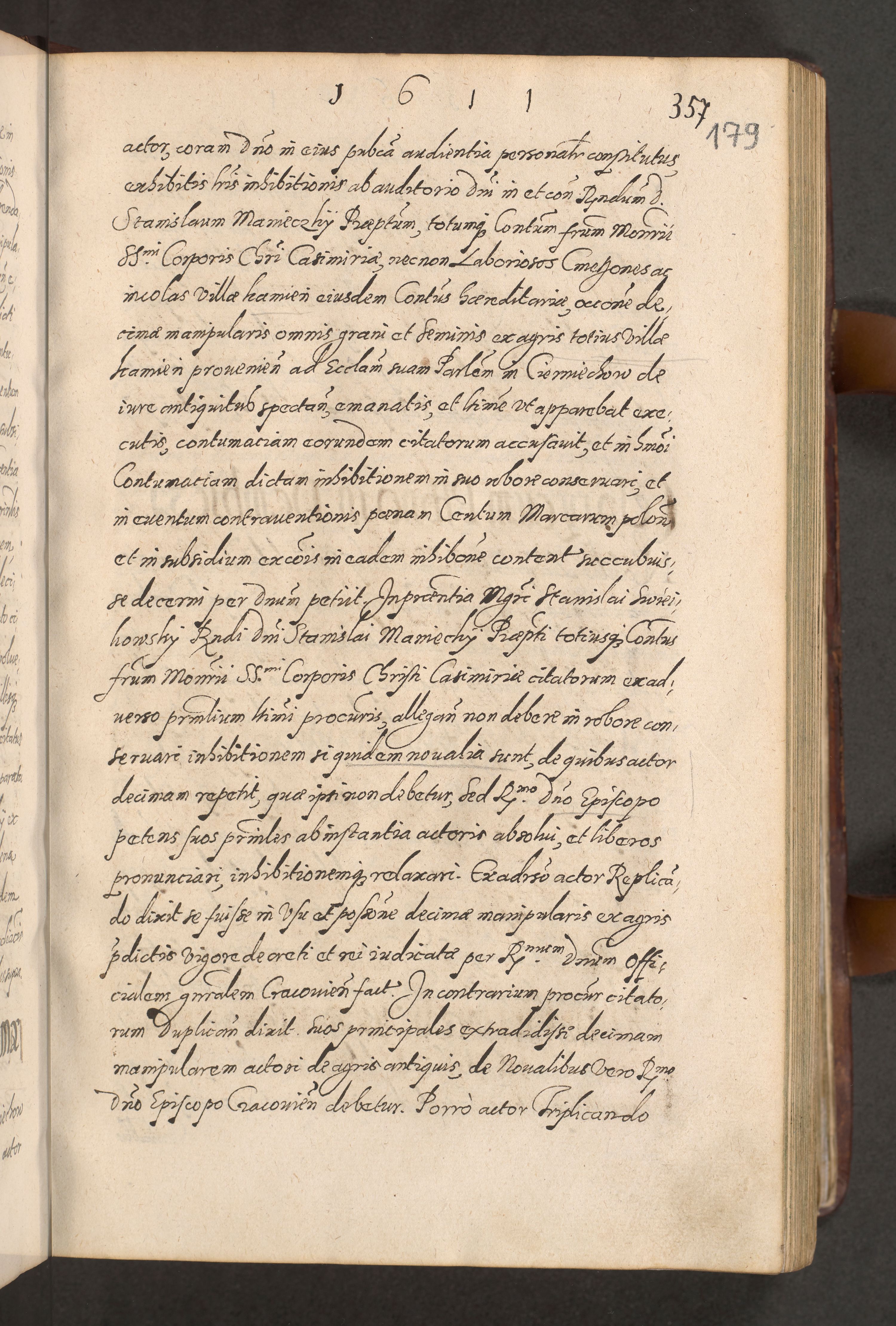 Acta actorum causarum sententiarum tam diffinitiuarum quam interloquutorisrum decretorum obligationum quietationum procuratorum constitutionum etc. etc. coram Reverendo Domino Paulo Dembski Dei et Apostolice Sedis Gratia Episcopalo Dicensis Suffraganeo Canonico Vicario in Spiritualibus et Officiali Generali Cracoviensis ad Annum Domini Millesimum Sexcentesimum Undecimum cuius indictio octava pontificatus Sanctissimi Domini Nostri Domini Pauli Divina Providentia Papae Vti foeliciter continuantur