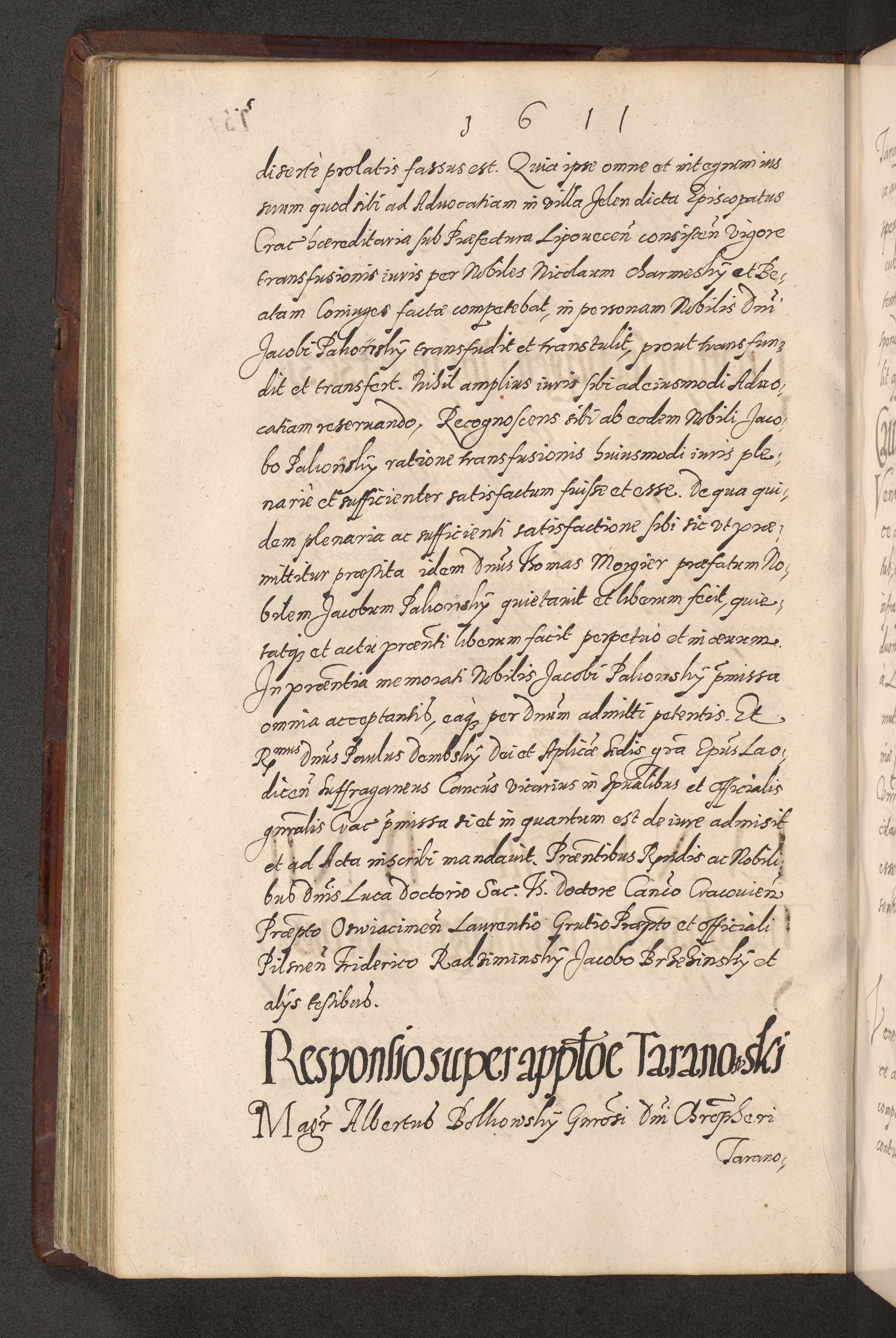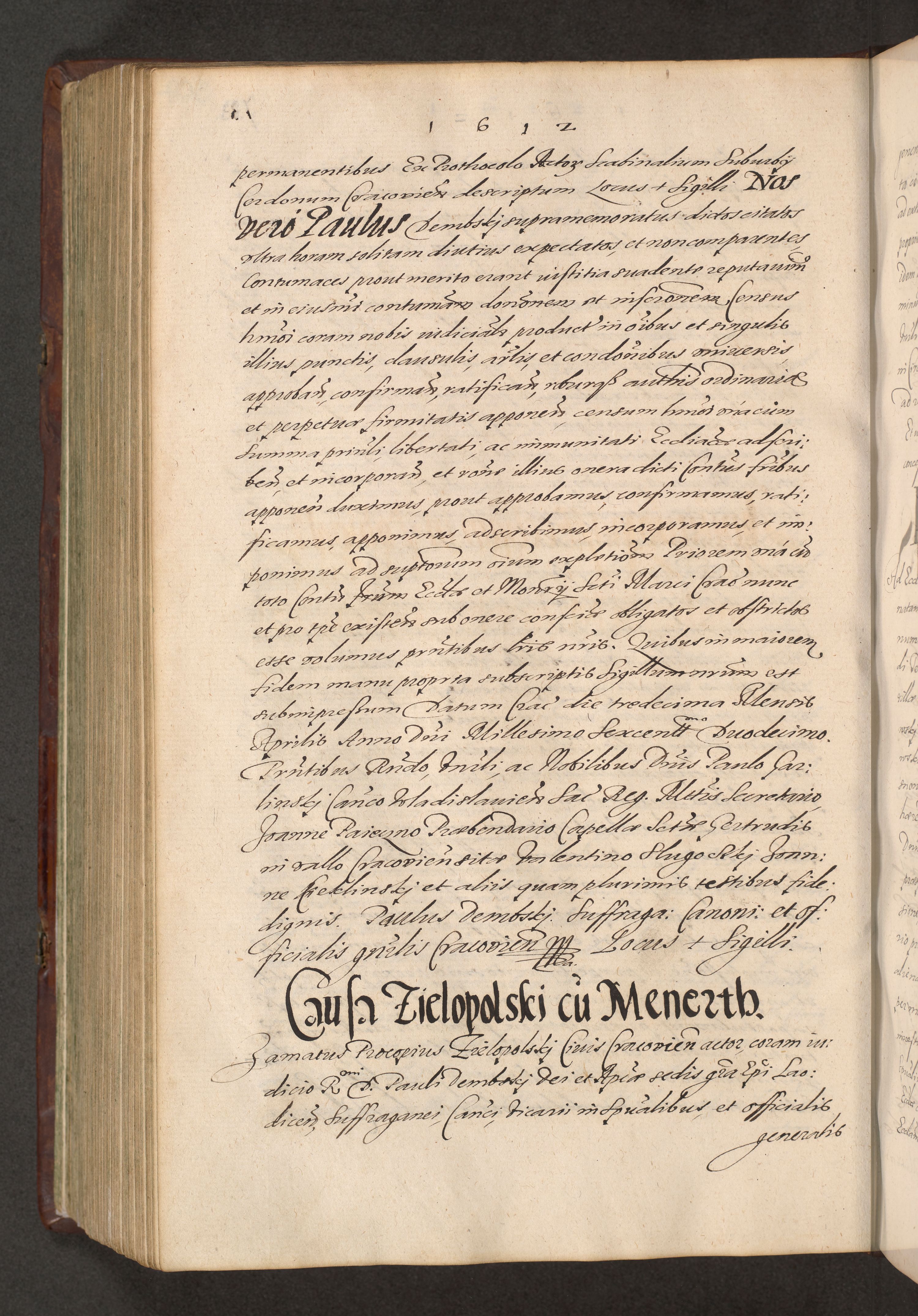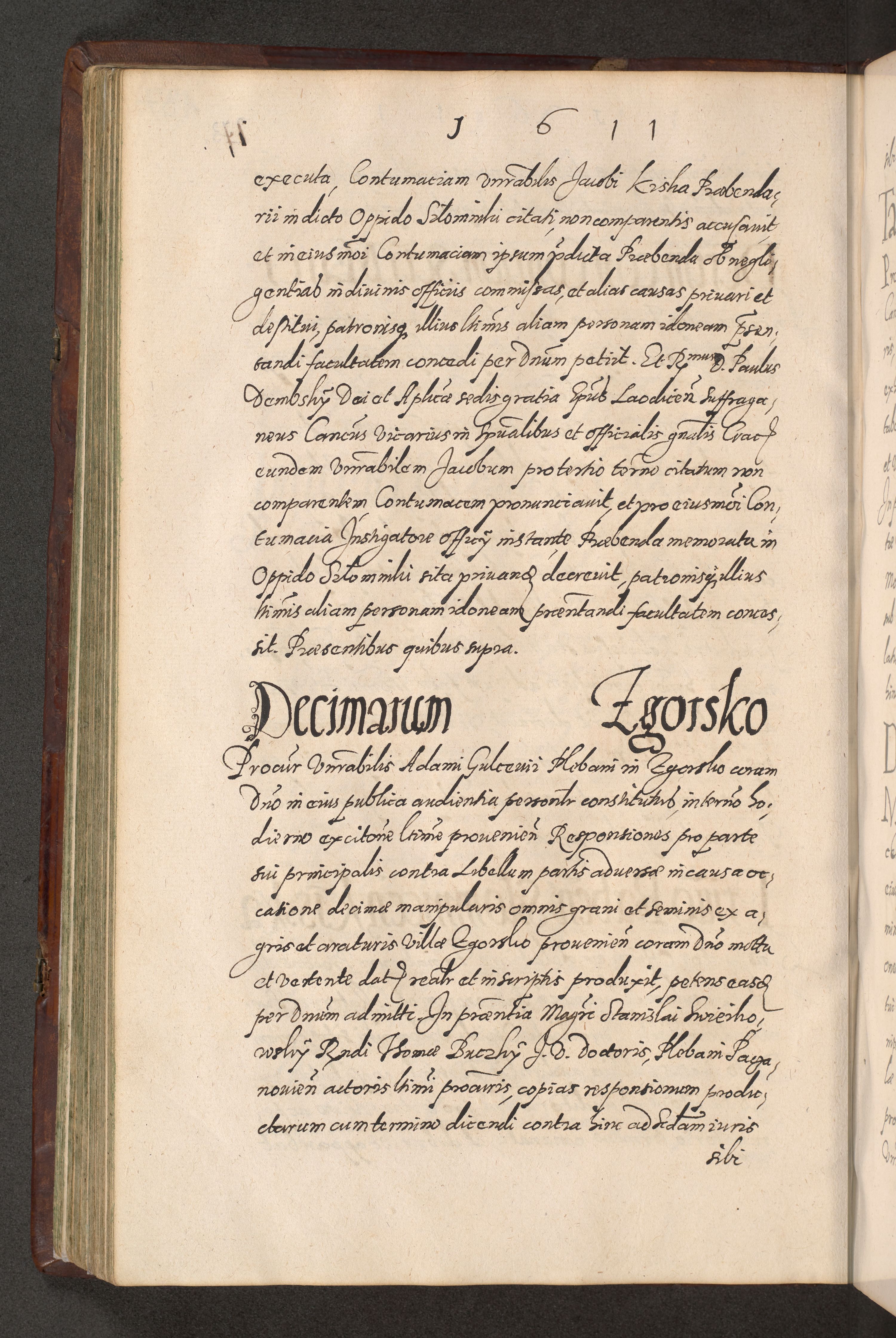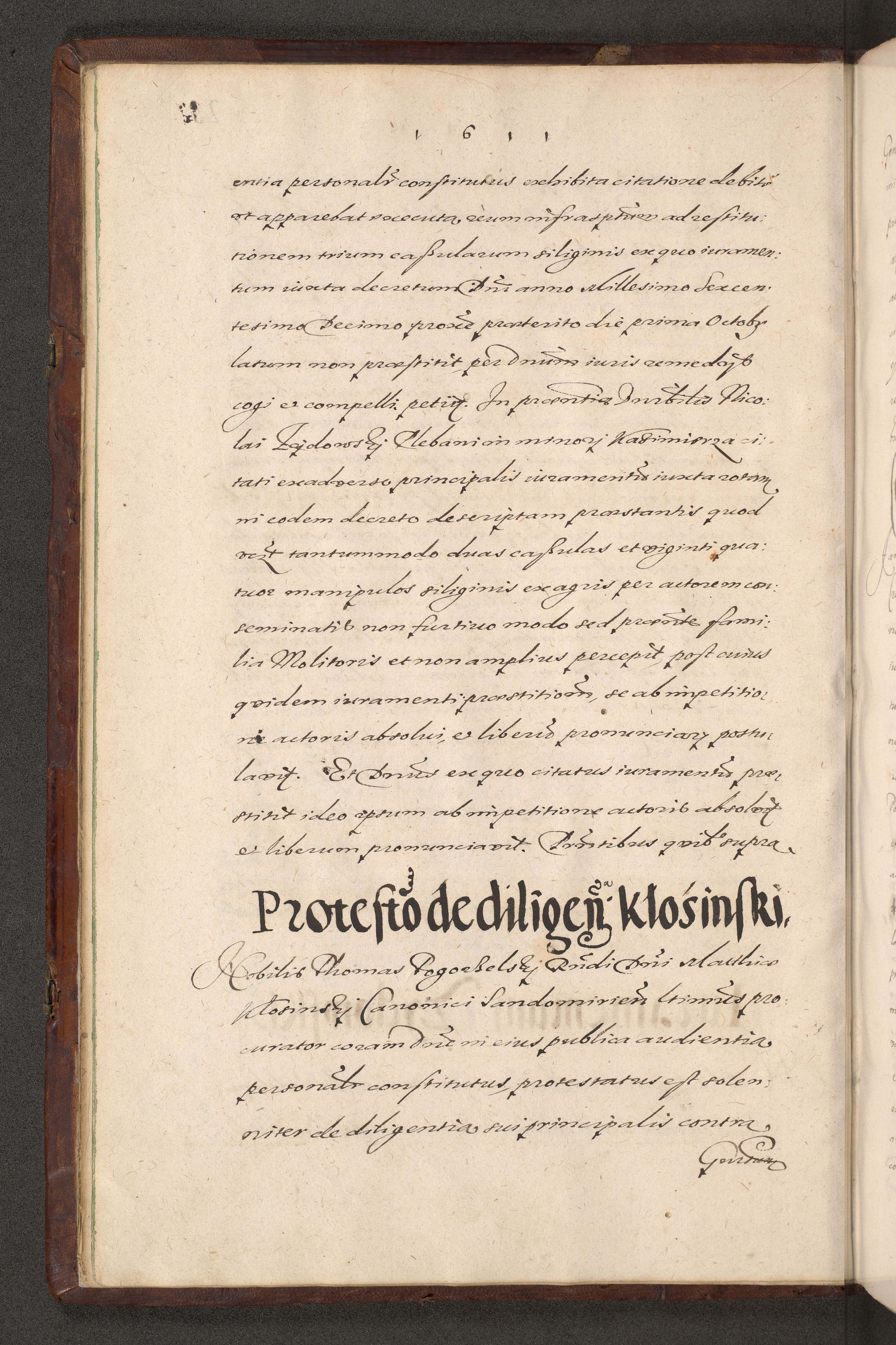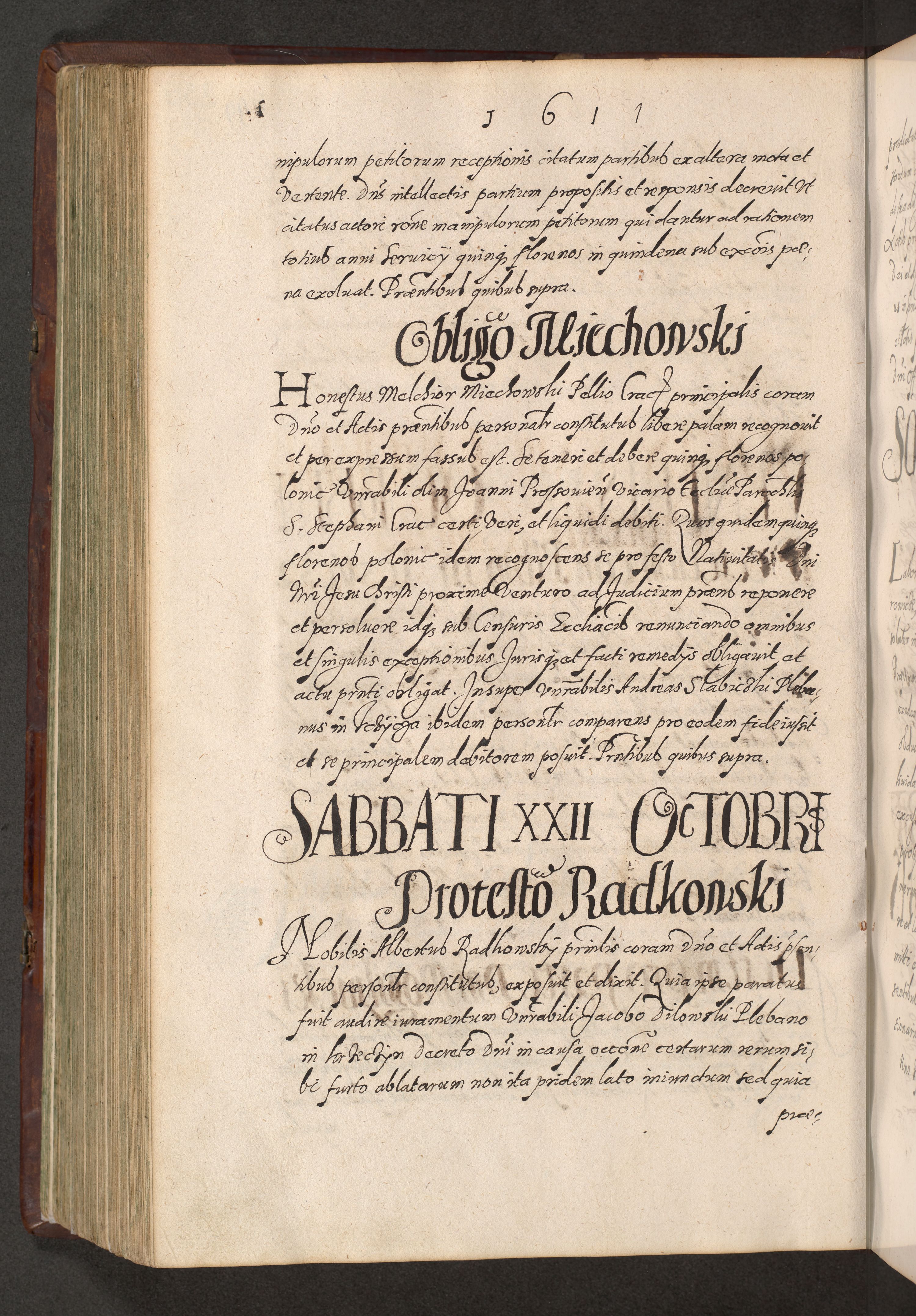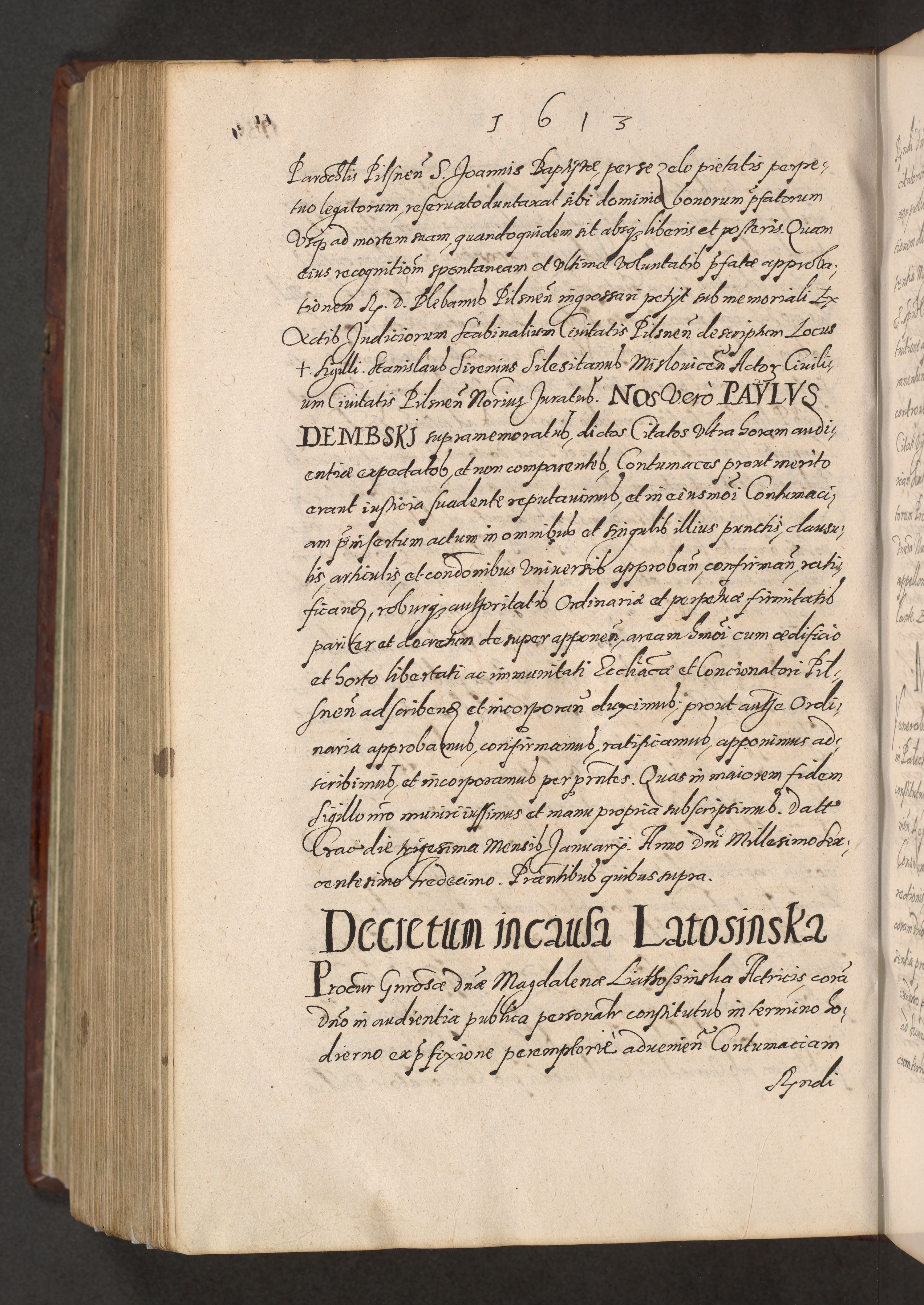 Acta actorum causarum sententiarum tam diffinitiuarum quam interloquutorisrum decretorum obligationum quietationum procuratorum constitutionum etc. etc. coram Reverendo Domino Paulo Dembski Dei et Apostolice Sedis Gratia Episcopalo Dicensis Suffraganeo Canonico Vicario in Spiritualibus et Officiali Generali Cracoviensis ad Annum Domini Millesimum Sexcentesimum Undecimum cuius indictio octava pontificatus Sanctissimi Domini Nostri Domini Pauli Divina Providentia Papae Vti foeliciter continuantur