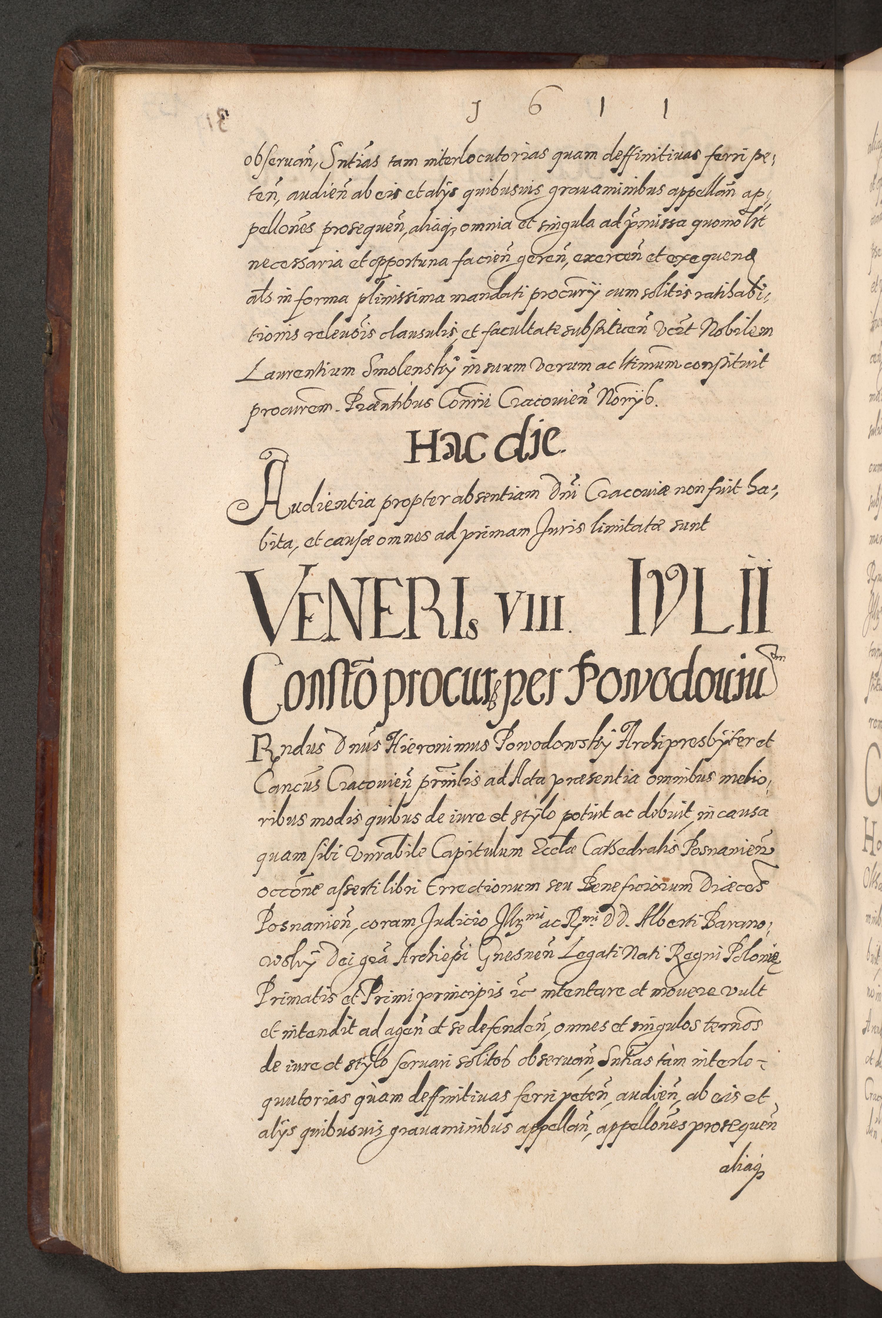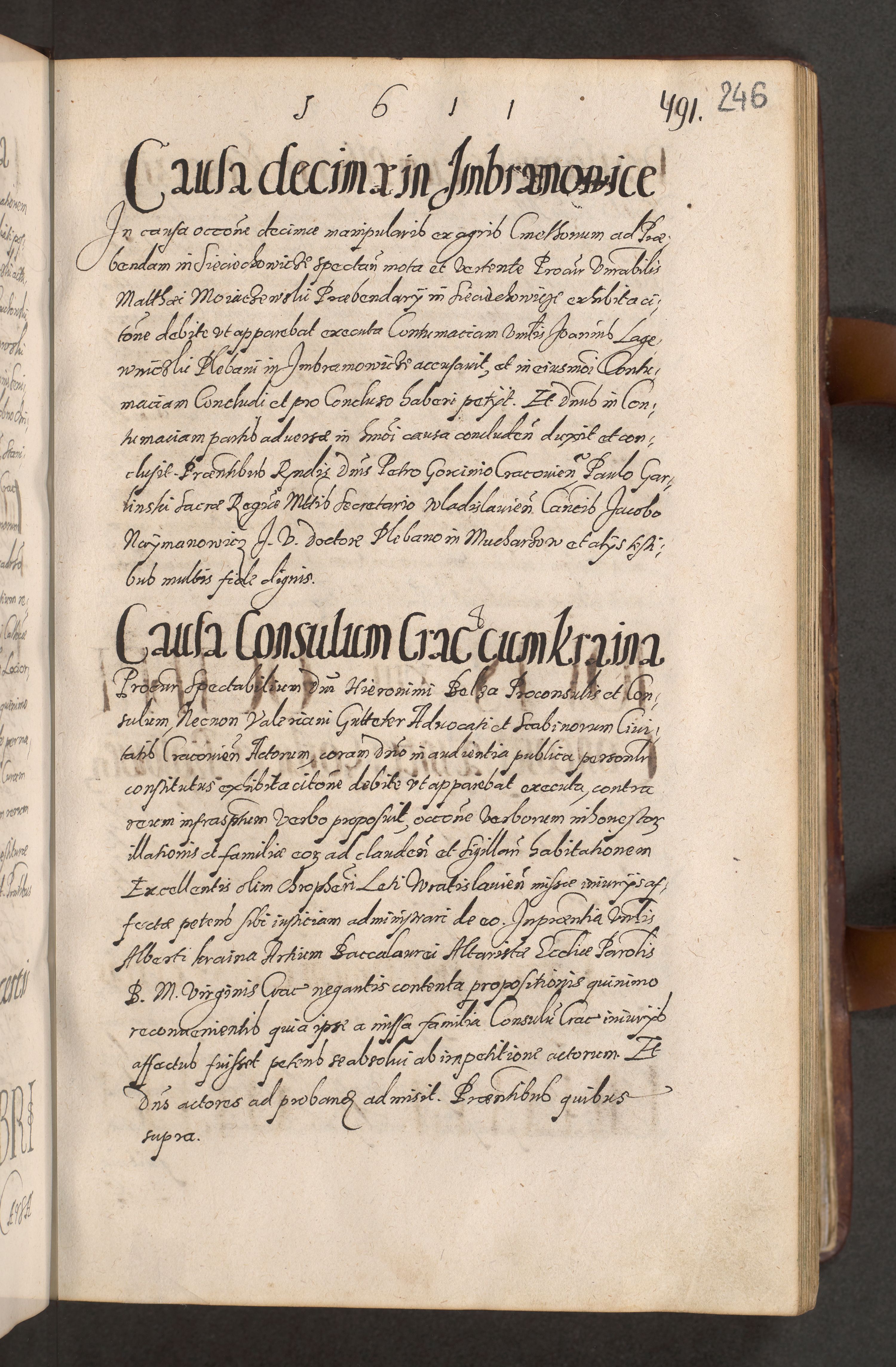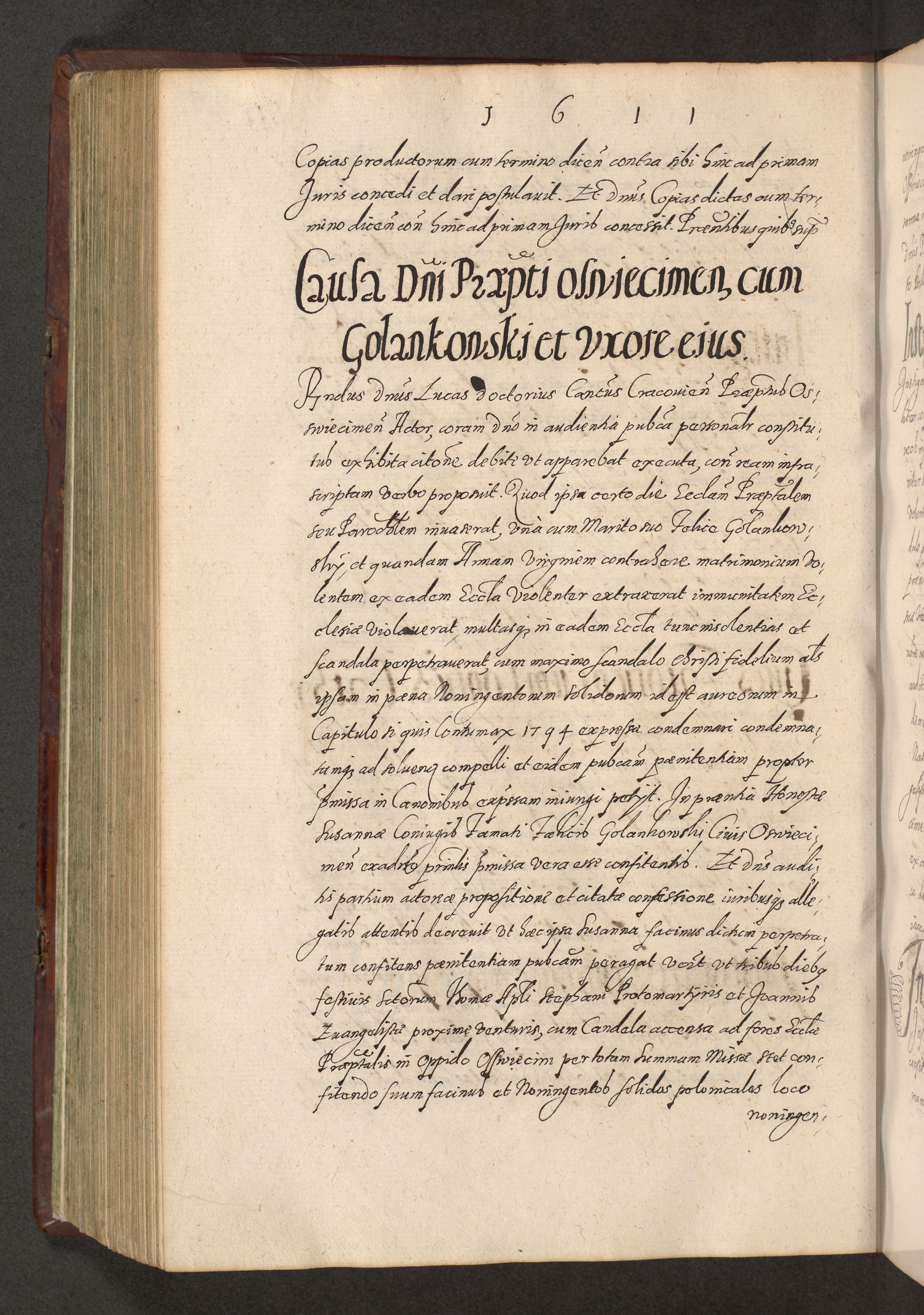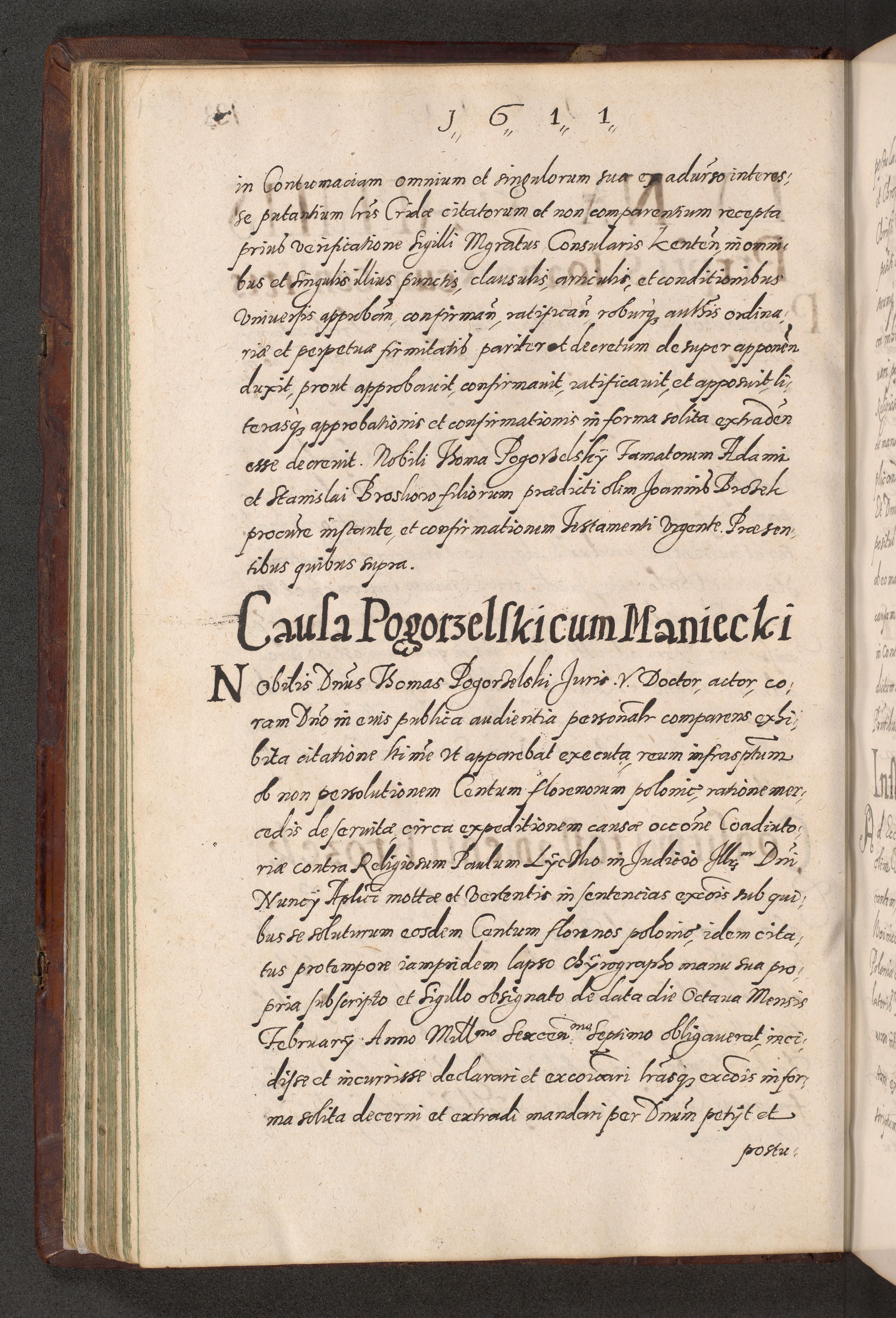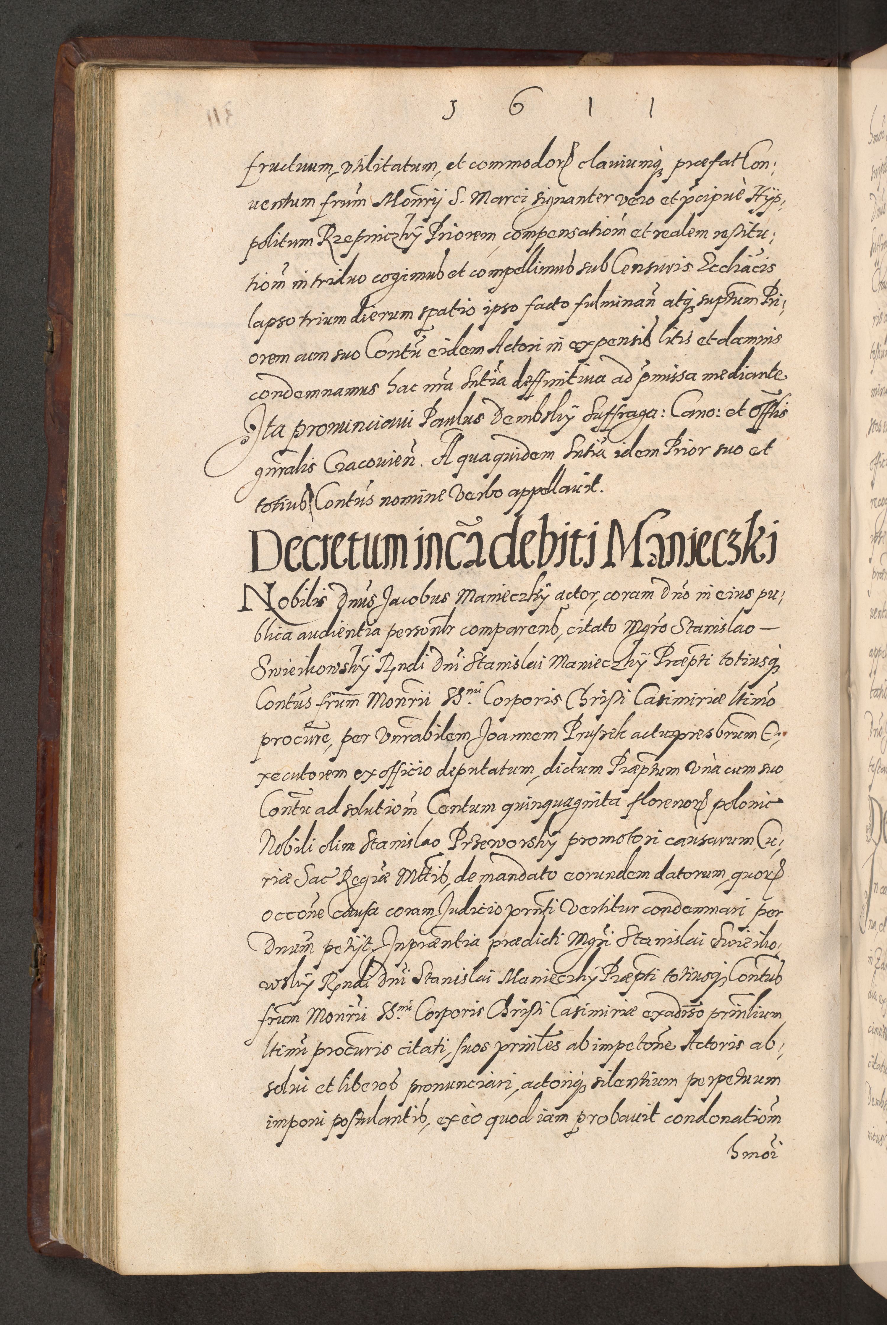Acta actorum causarum sententiarum tam diffinitiuarum quam interloquutorisrum decretorum obligationum quietationum procuratorum constitutionum etc. etc. coram Reverendo Domino Paulo Dembski Dei et Apostolice Sedis Gratia Episcopalo Dicensis Suffraganeo Canonico Vicario in Spiritualibus et Officiali Generali Cracoviensis ad Annum Domini Millesimum Sexcentesimum Undecimum cuius indictio octava pontificatus Sanctissimi Domini Nostri Domini Pauli Divina Providentia Papae Vti foeliciter continuantur