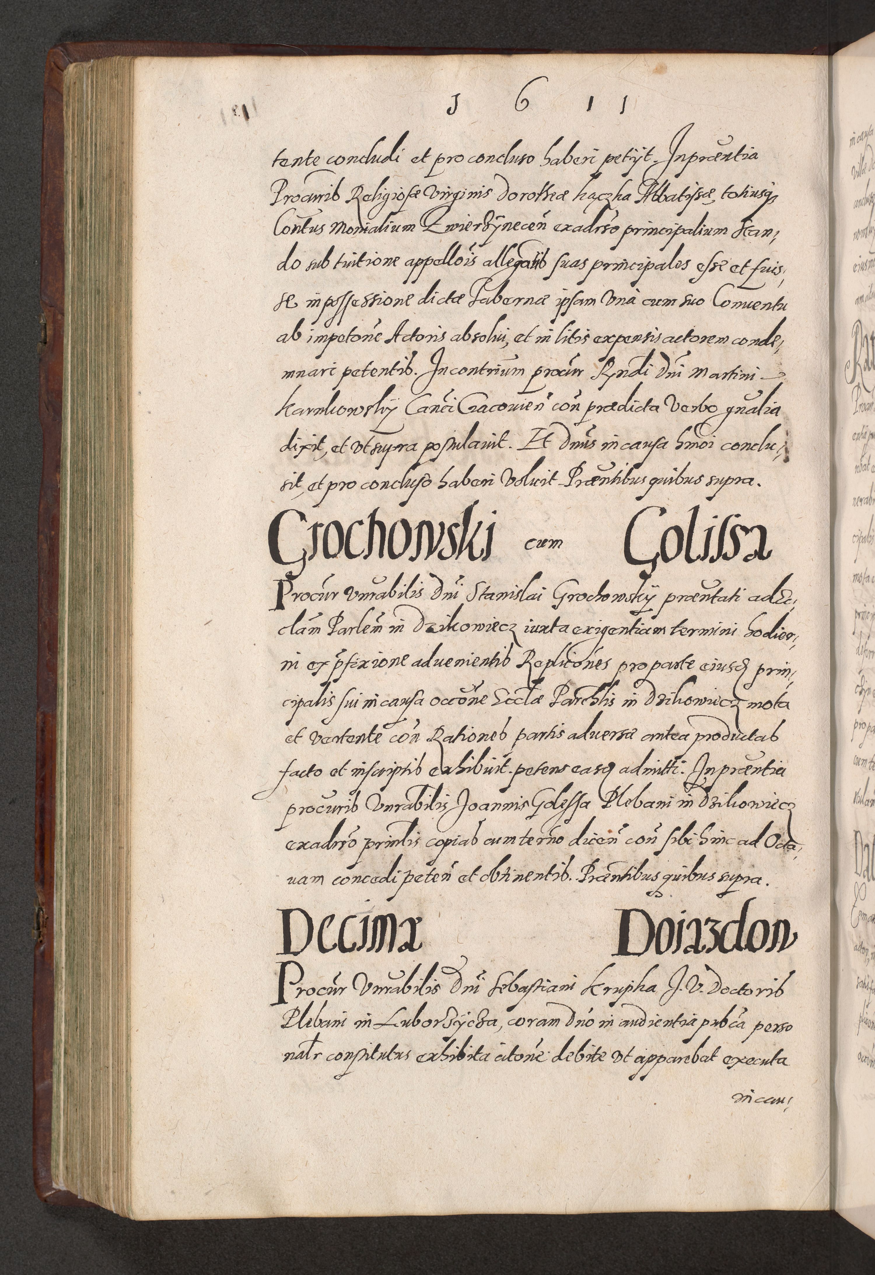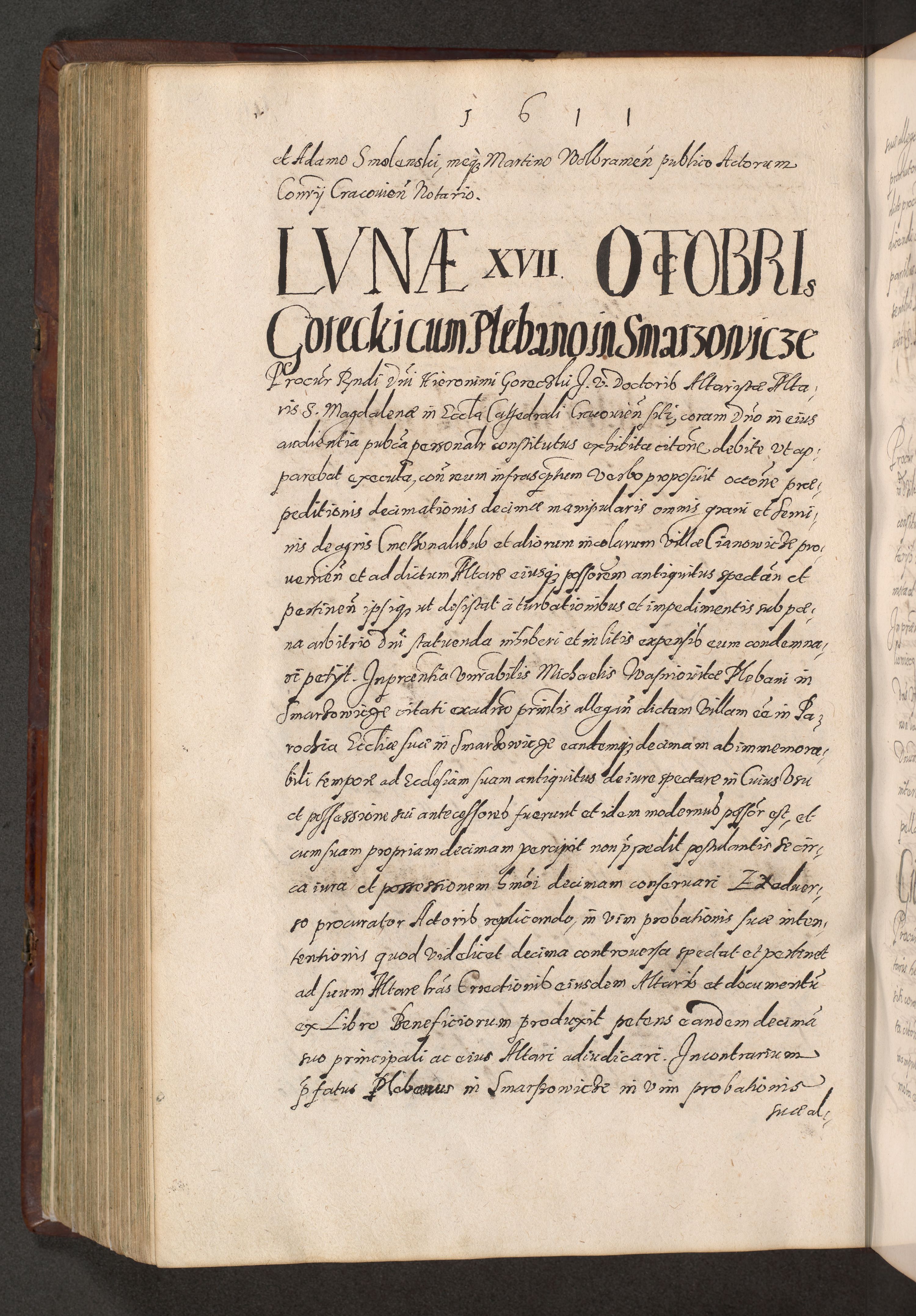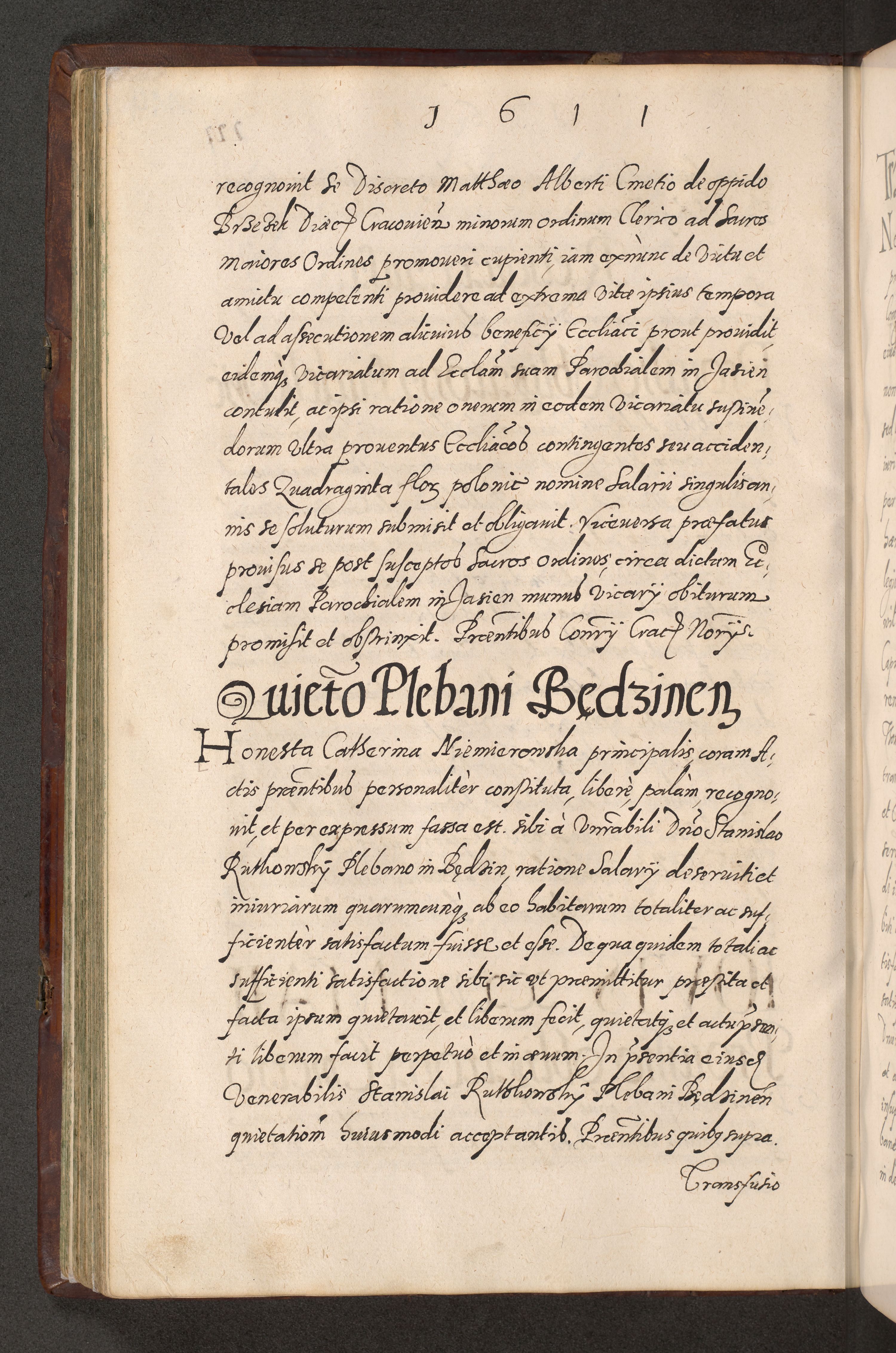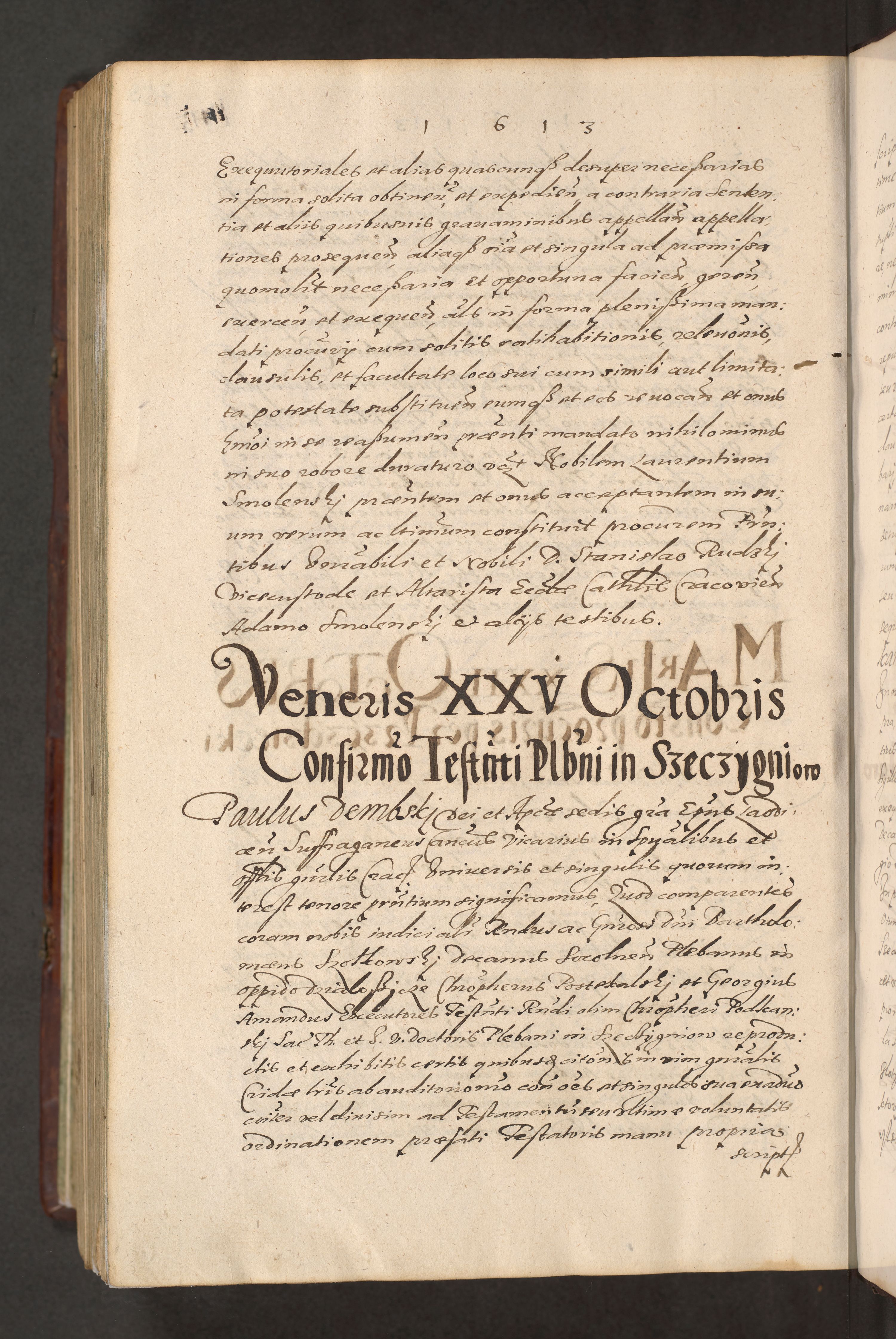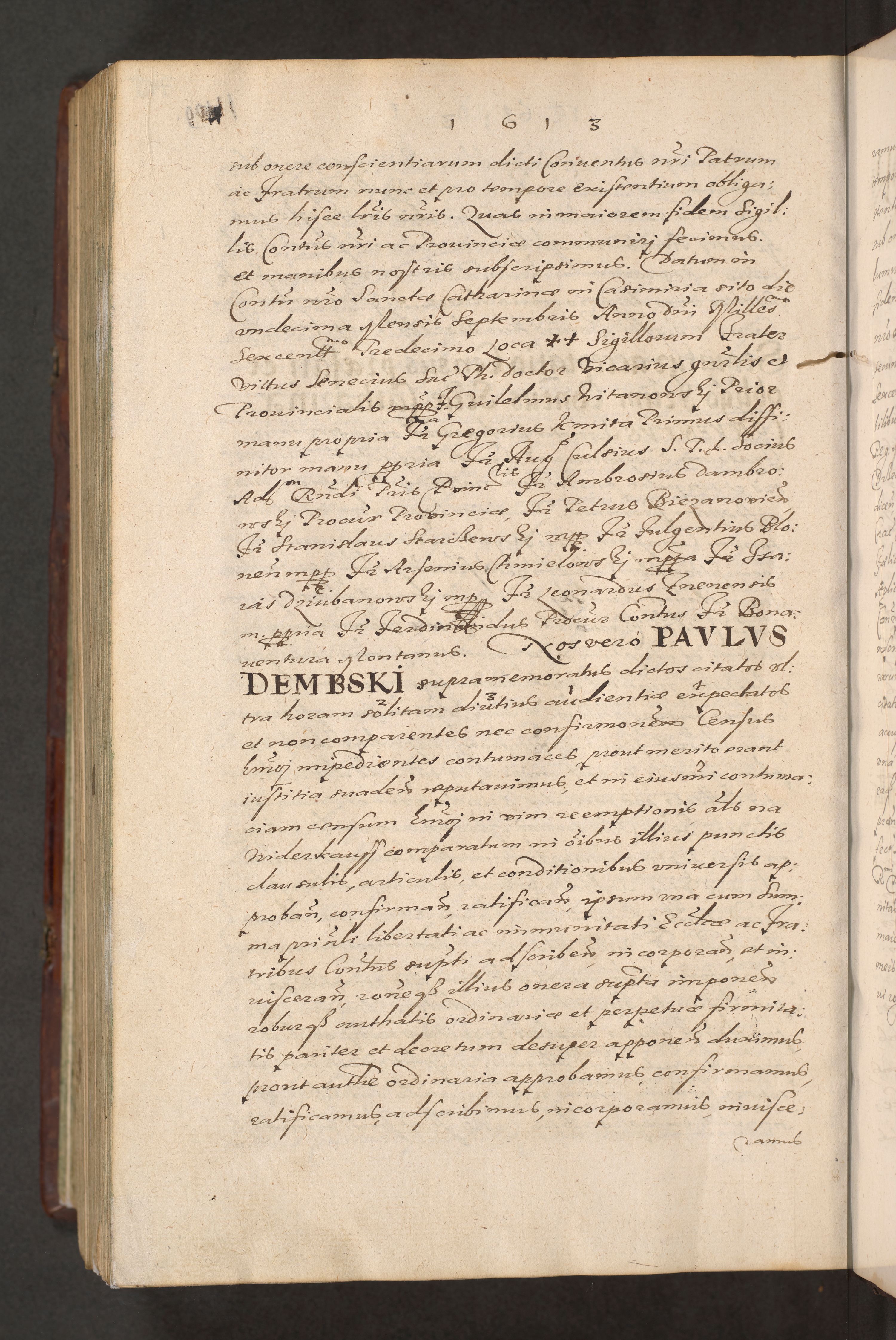 Acta actorum causarum sententiarum tam diffinitiuarum quam interloquutorisrum decretorum obligationum quietationum procuratorum constitutionum etc. etc. coram Reverendo Domino Paulo Dembski Dei et Apostolice Sedis Gratia Episcopalo Dicensis Suffraganeo Canonico Vicario in Spiritualibus et Officiali Generali Cracoviensis ad Annum Domini Millesimum Sexcentesimum Undecimum cuius indictio octava pontificatus Sanctissimi Domini Nostri Domini Pauli Divina Providentia Papae Vti foeliciter continuantur