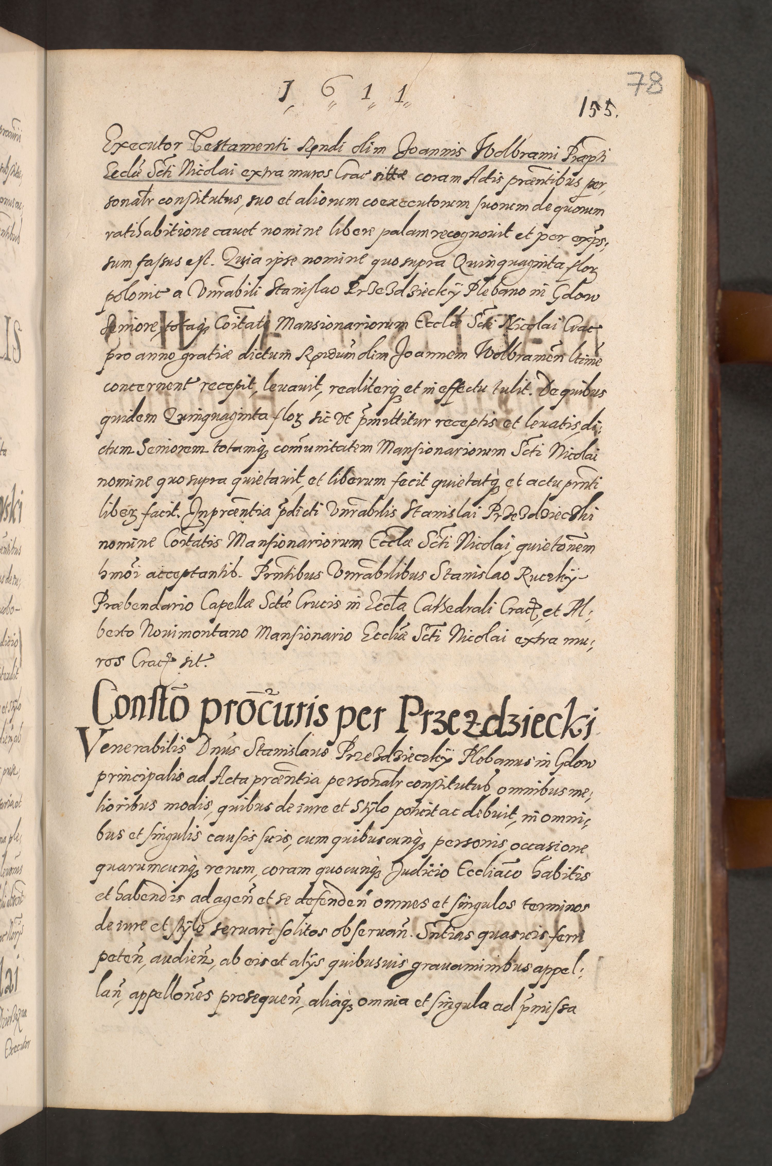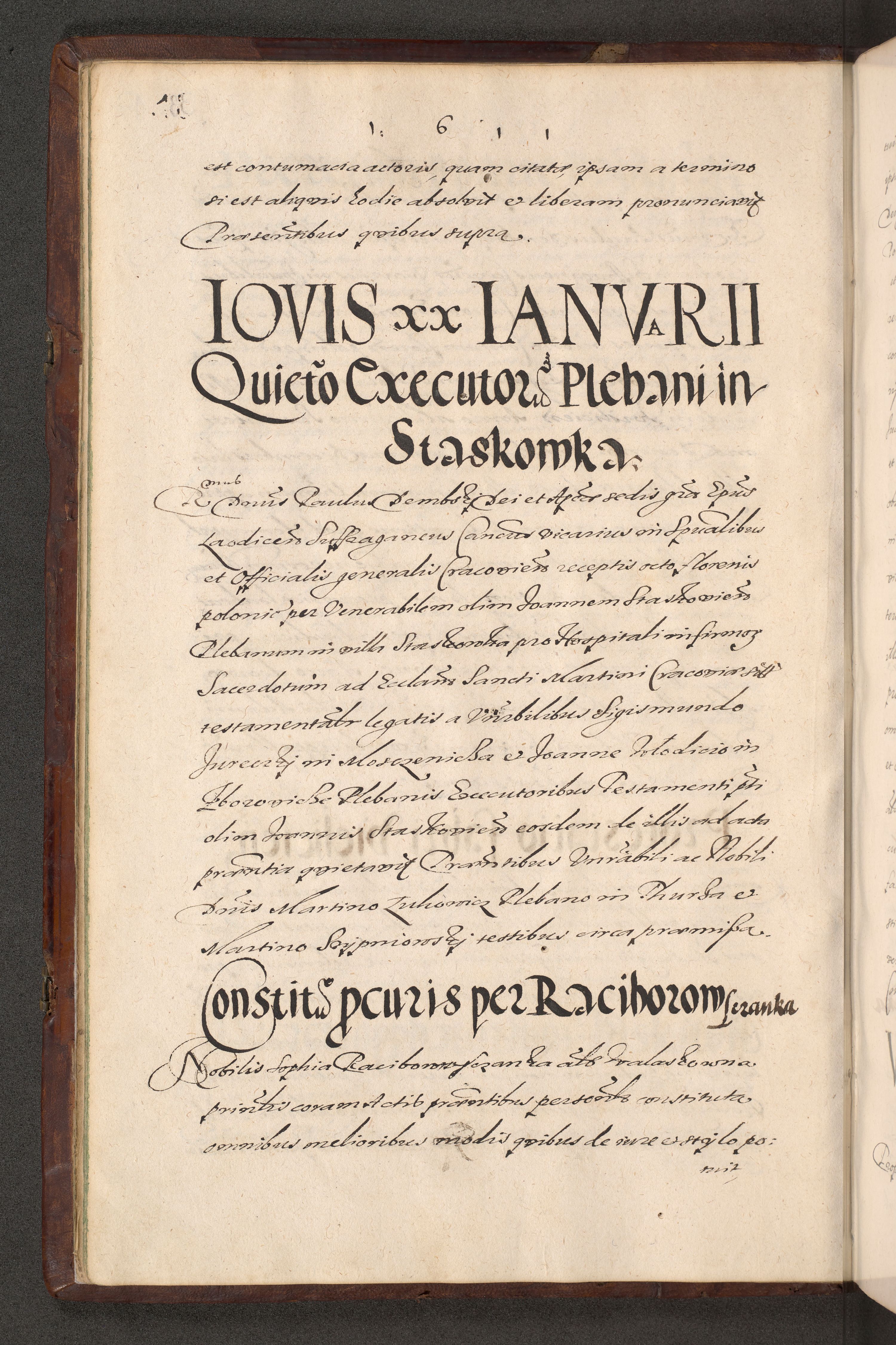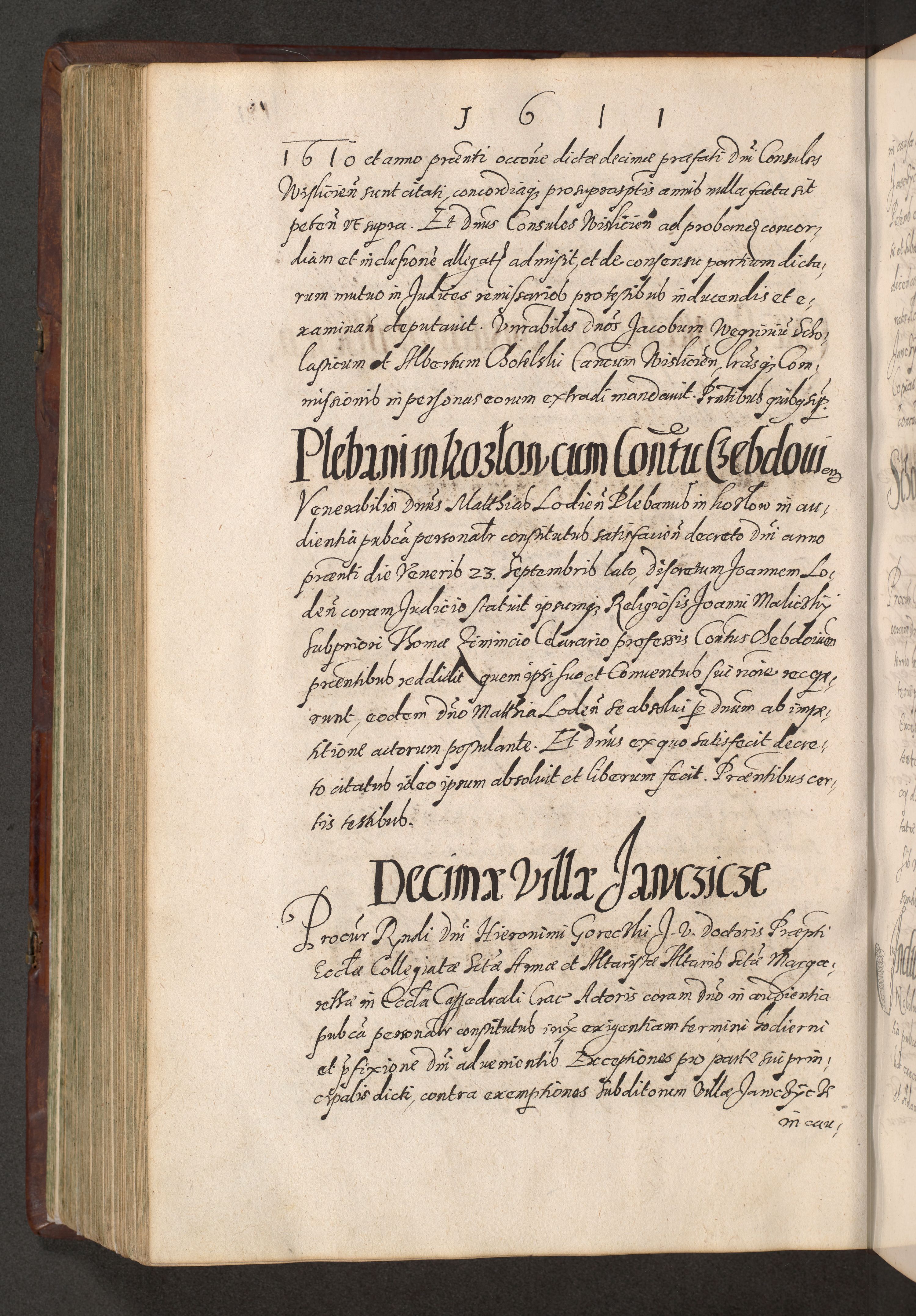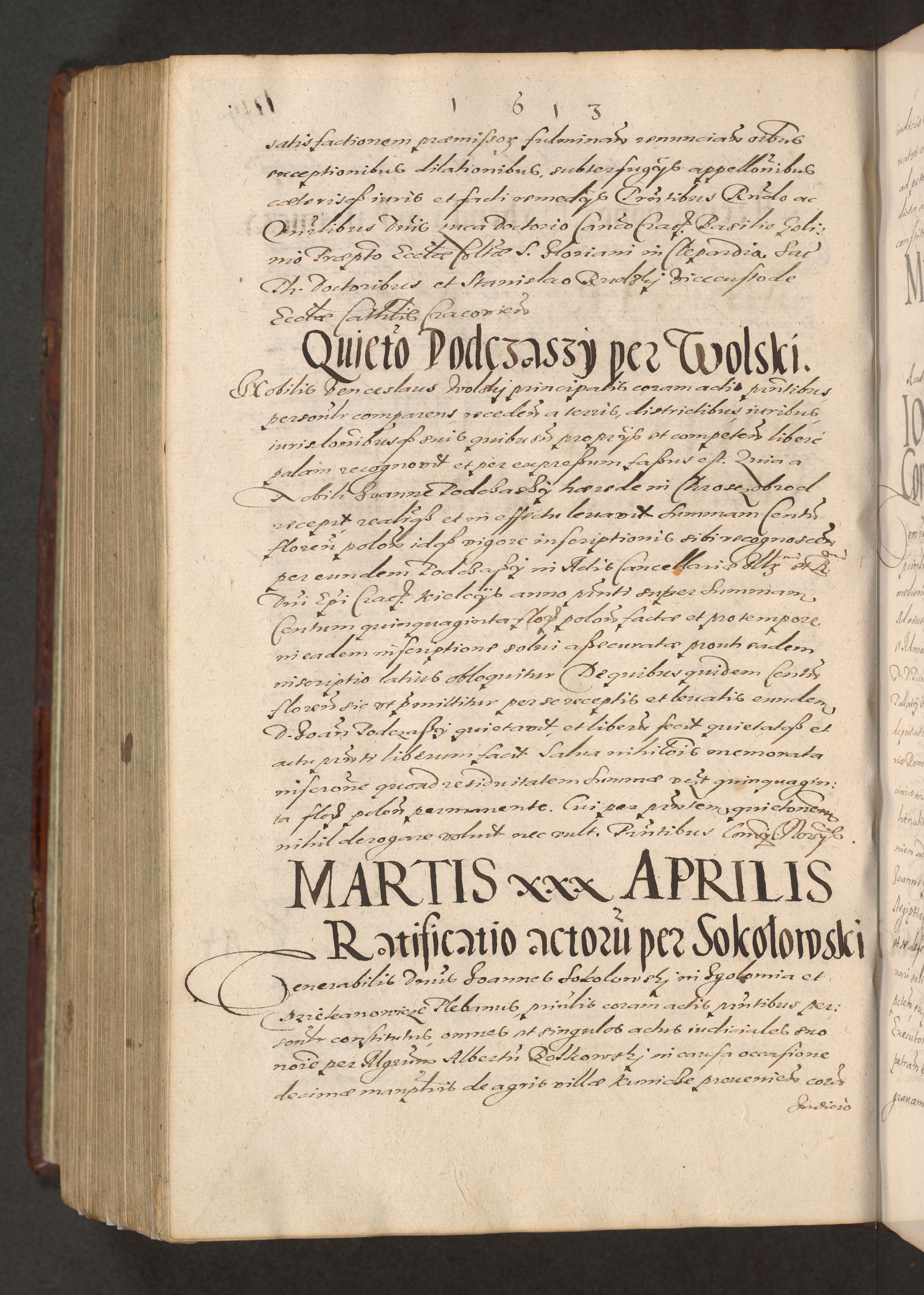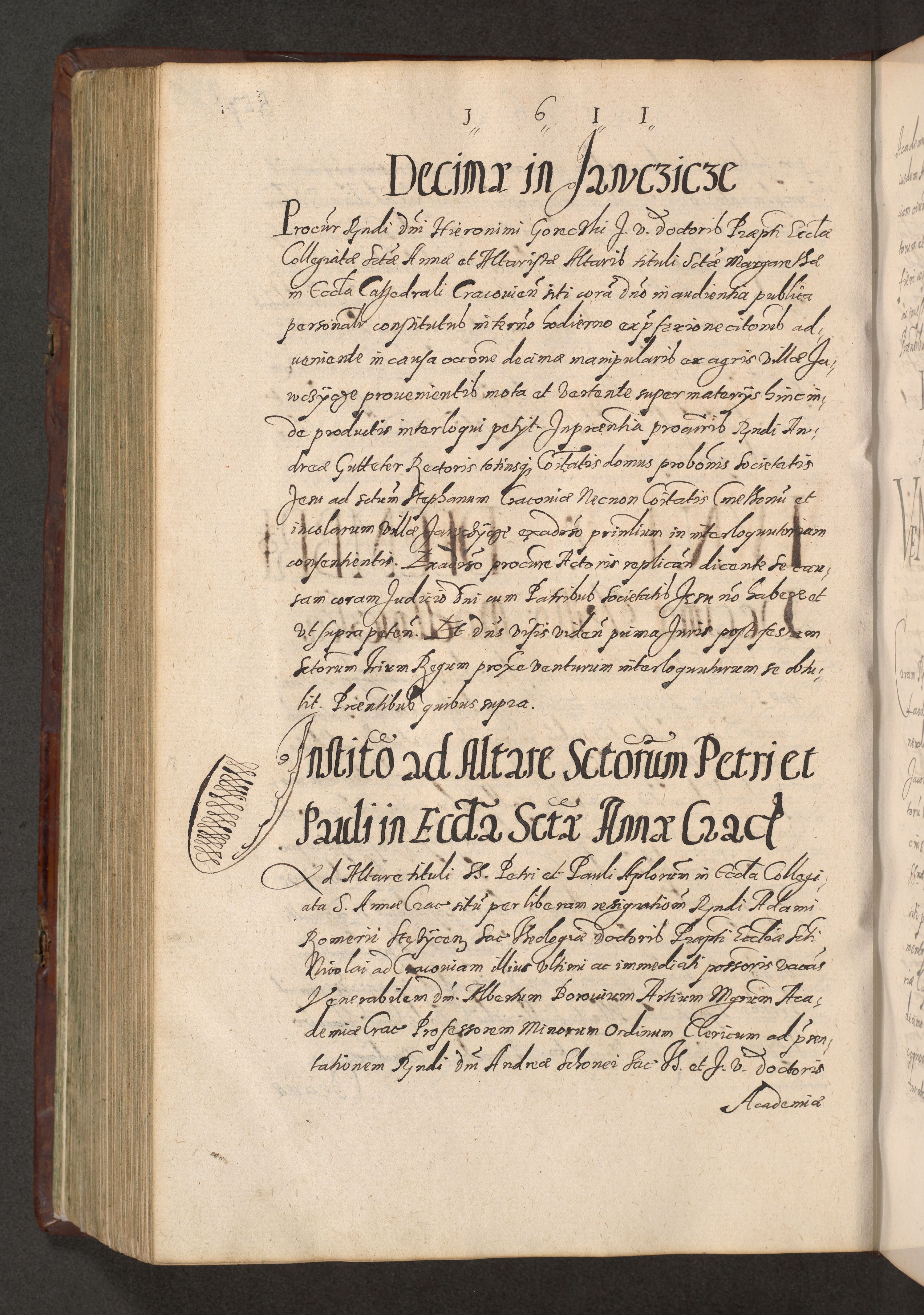 Acta actorum causarum sententiarum tam diffinitiuarum quam interloquutorisrum decretorum obligationum quietationum procuratorum constitutionum etc. etc. coram Reverendo Domino Paulo Dembski Dei et Apostolice Sedis Gratia Episcopalo Dicensis Suffraganeo Canonico Vicario in Spiritualibus et Officiali Generali Cracoviensis ad Annum Domini Millesimum Sexcentesimum Undecimum cuius indictio octava pontificatus Sanctissimi Domini Nostri Domini Pauli Divina Providentia Papae Vti foeliciter continuantur