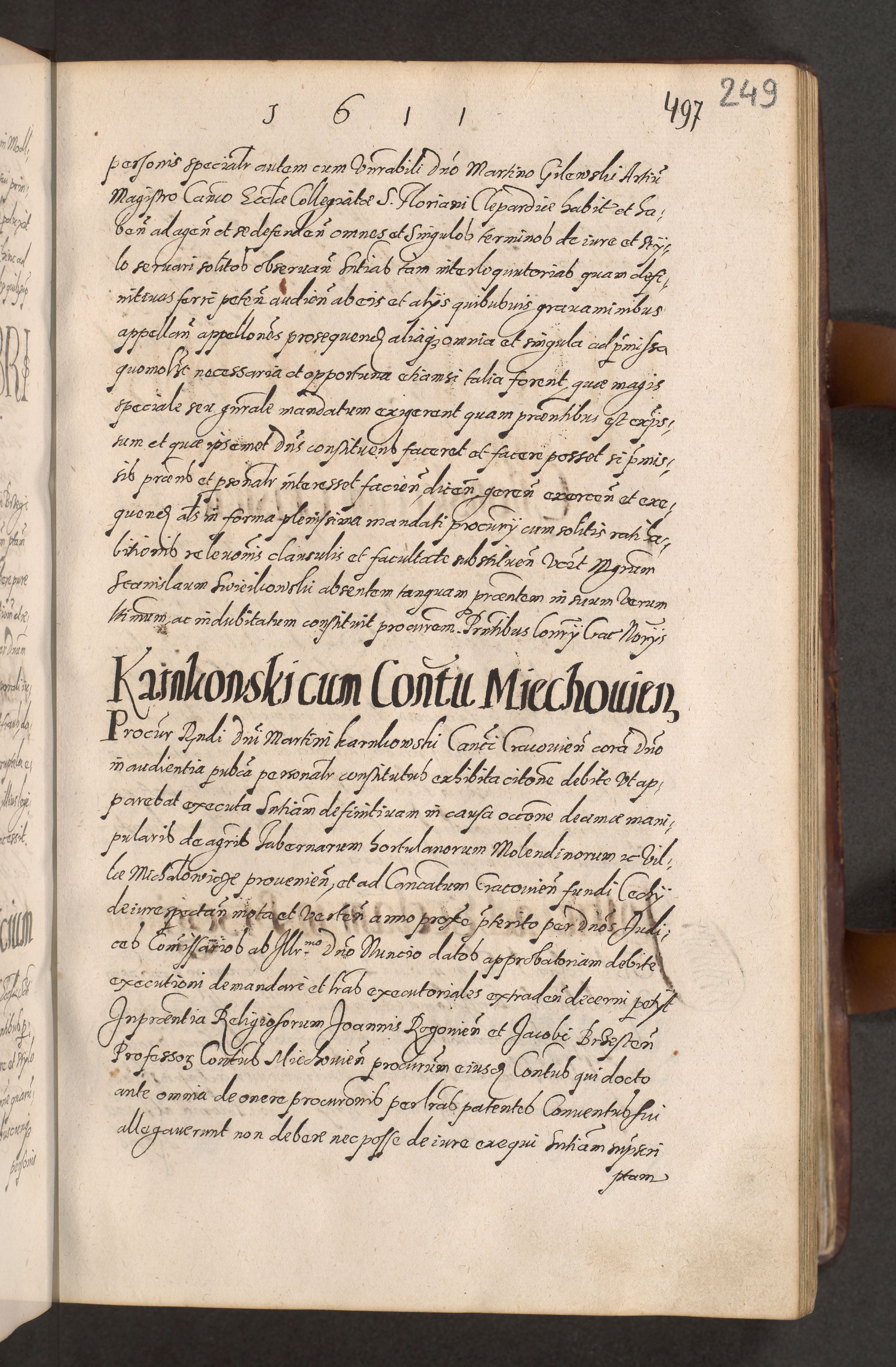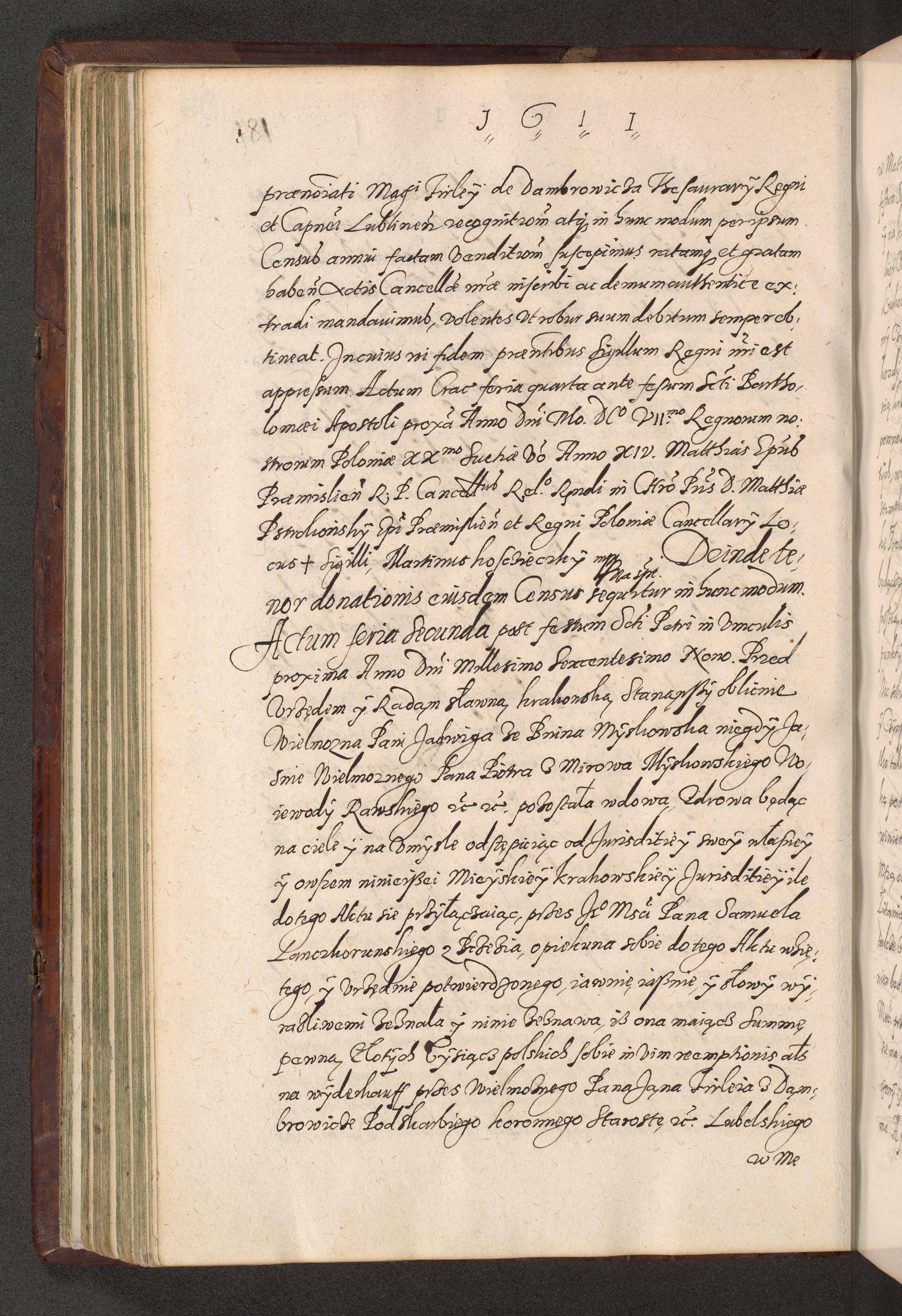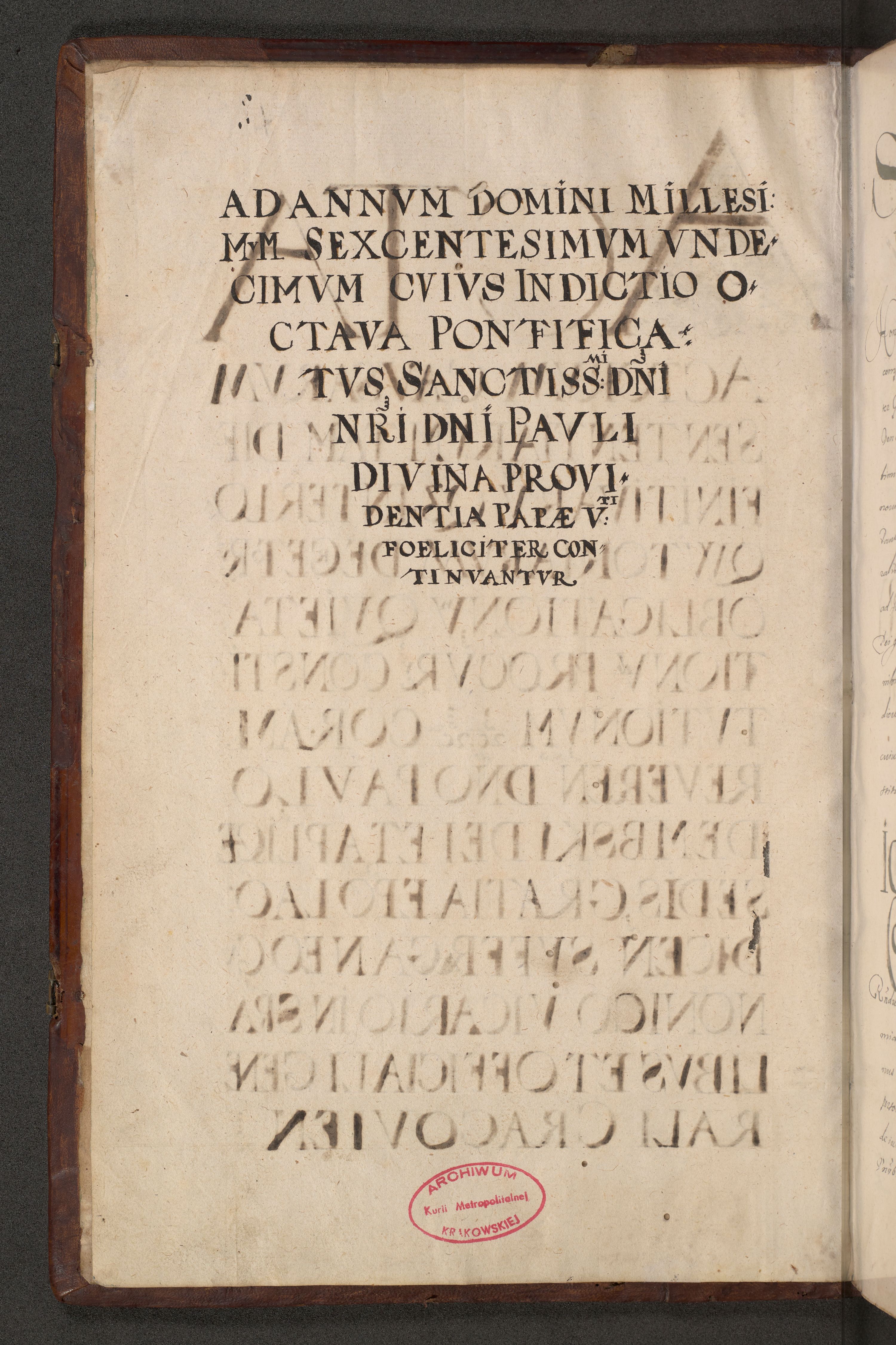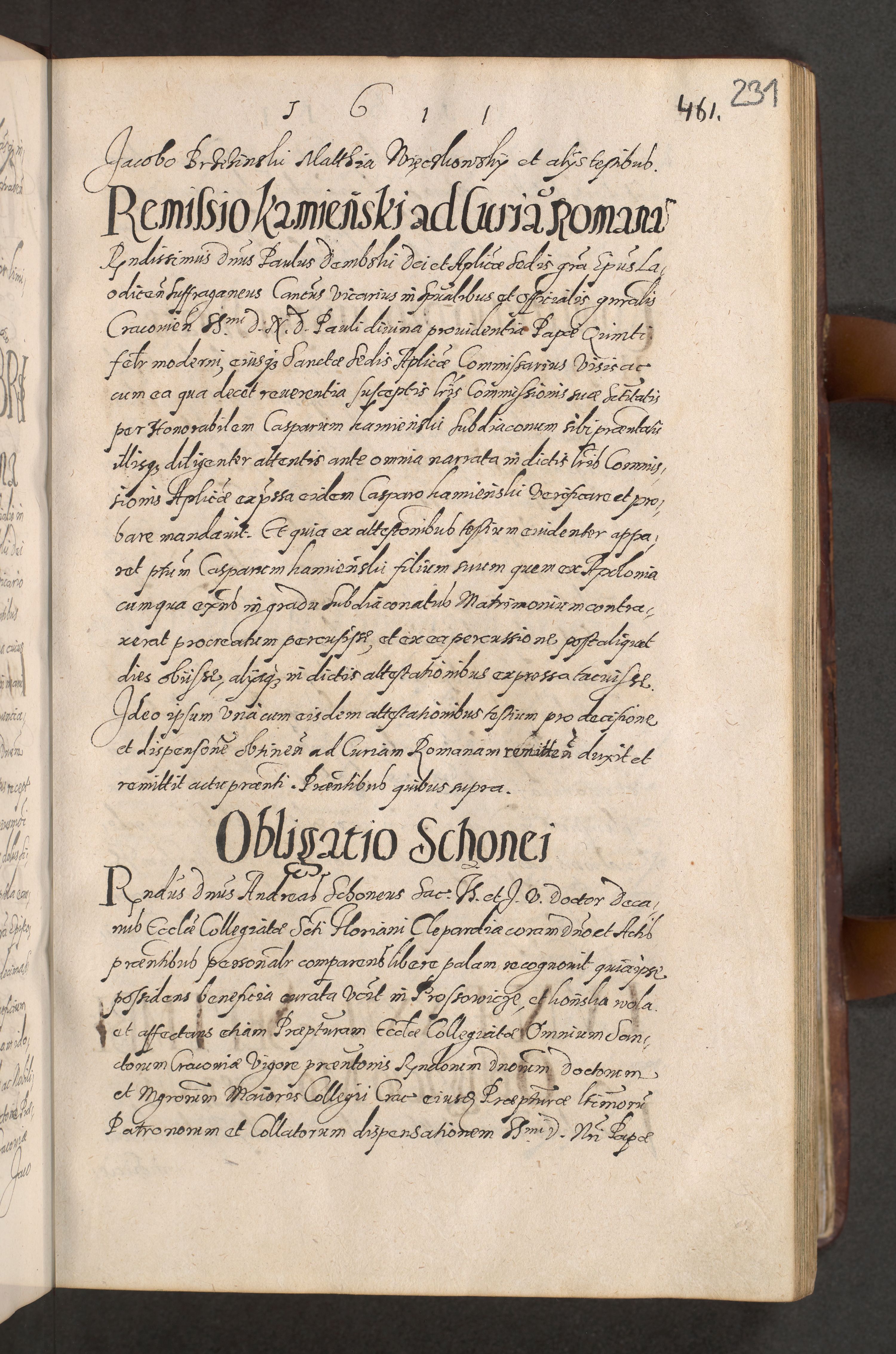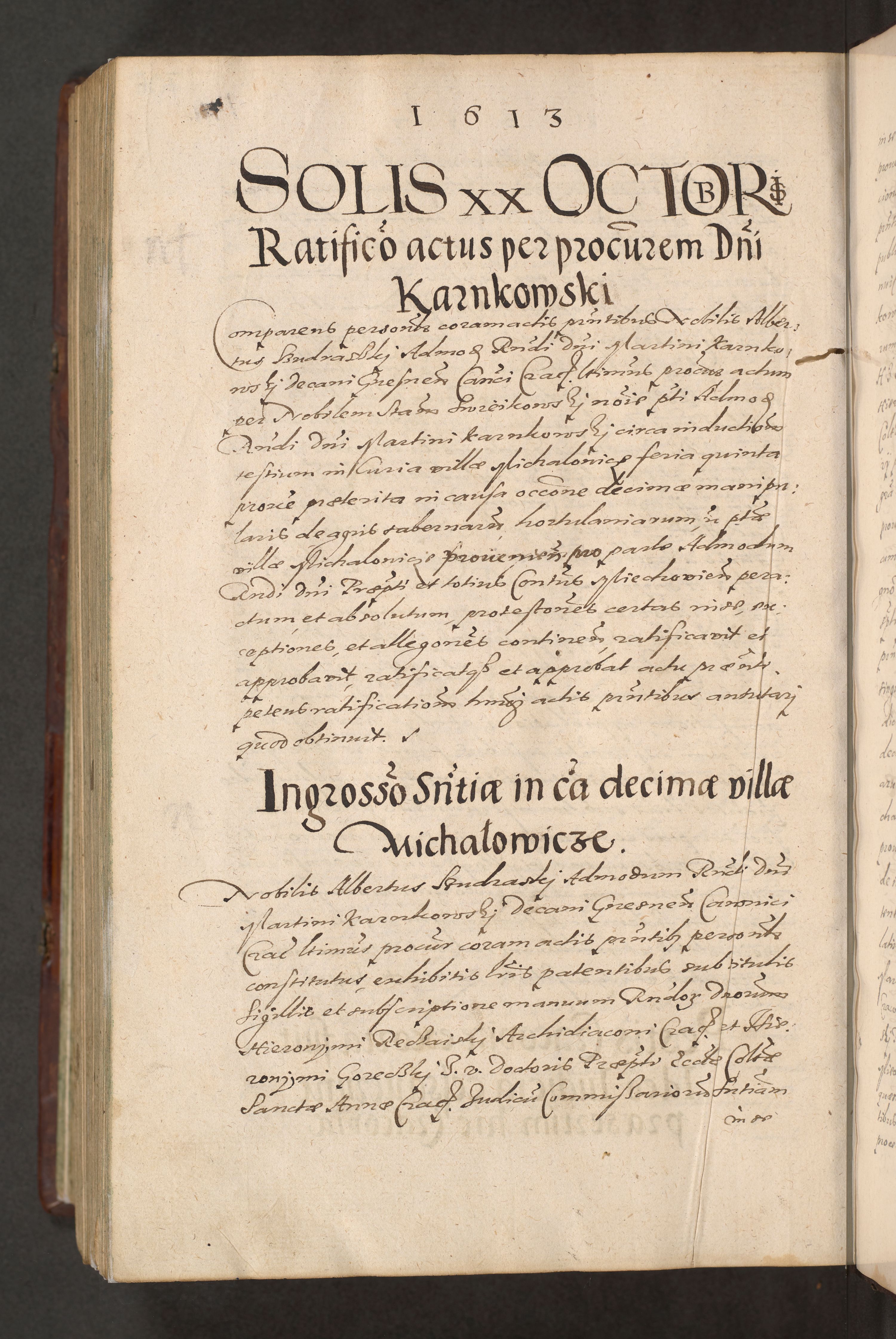 Acta actorum causarum sententiarum tam diffinitiuarum quam interloquutorisrum decretorum obligationum quietationum procuratorum constitutionum etc. etc. coram Reverendo Domino Paulo Dembski Dei et Apostolice Sedis Gratia Episcopalo Dicensis Suffraganeo Canonico Vicario in Spiritualibus et Officiali Generali Cracoviensis ad Annum Domini Millesimum Sexcentesimum Undecimum cuius indictio octava pontificatus Sanctissimi Domini Nostri Domini Pauli Divina Providentia Papae Vti foeliciter continuantur