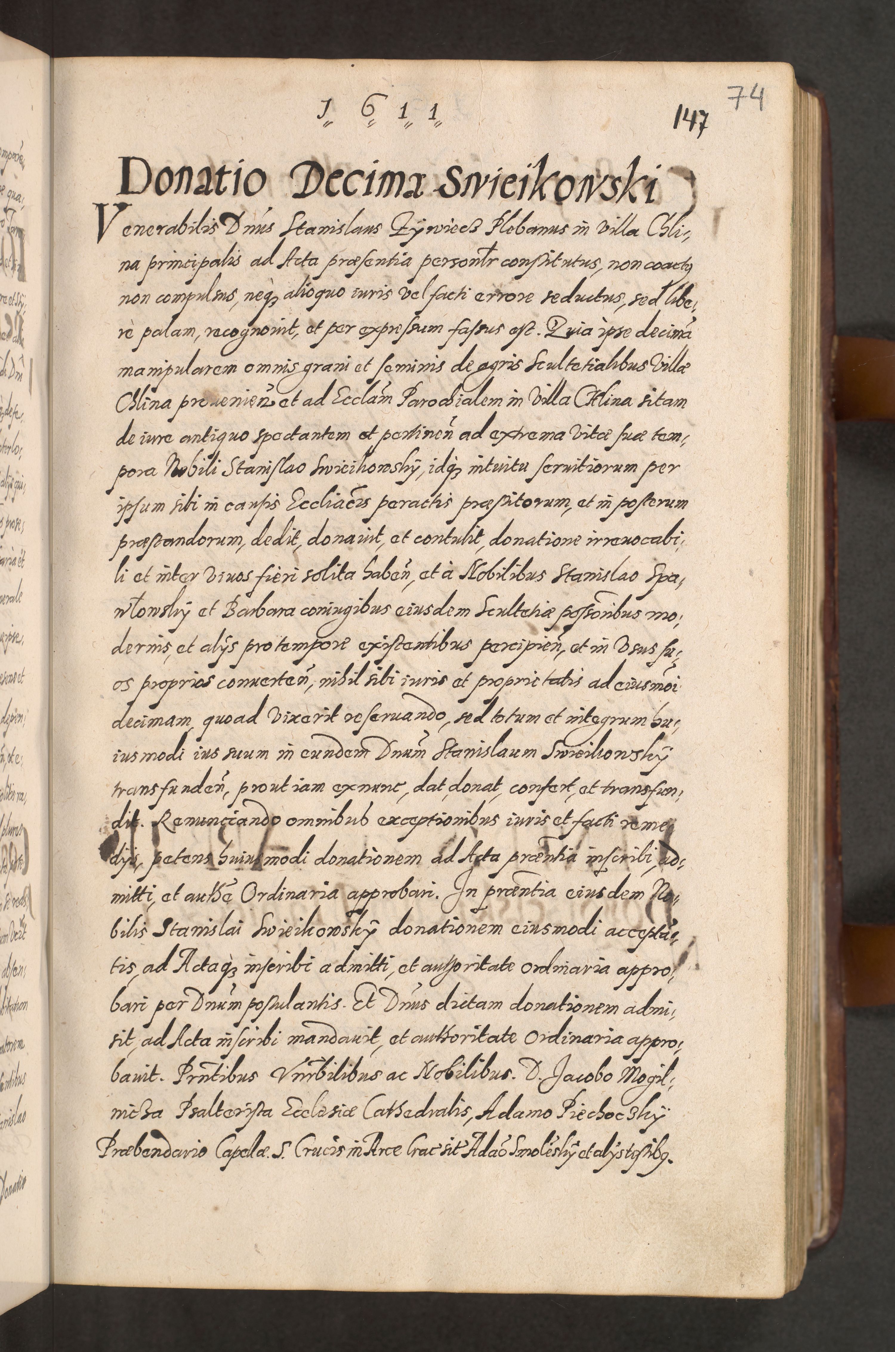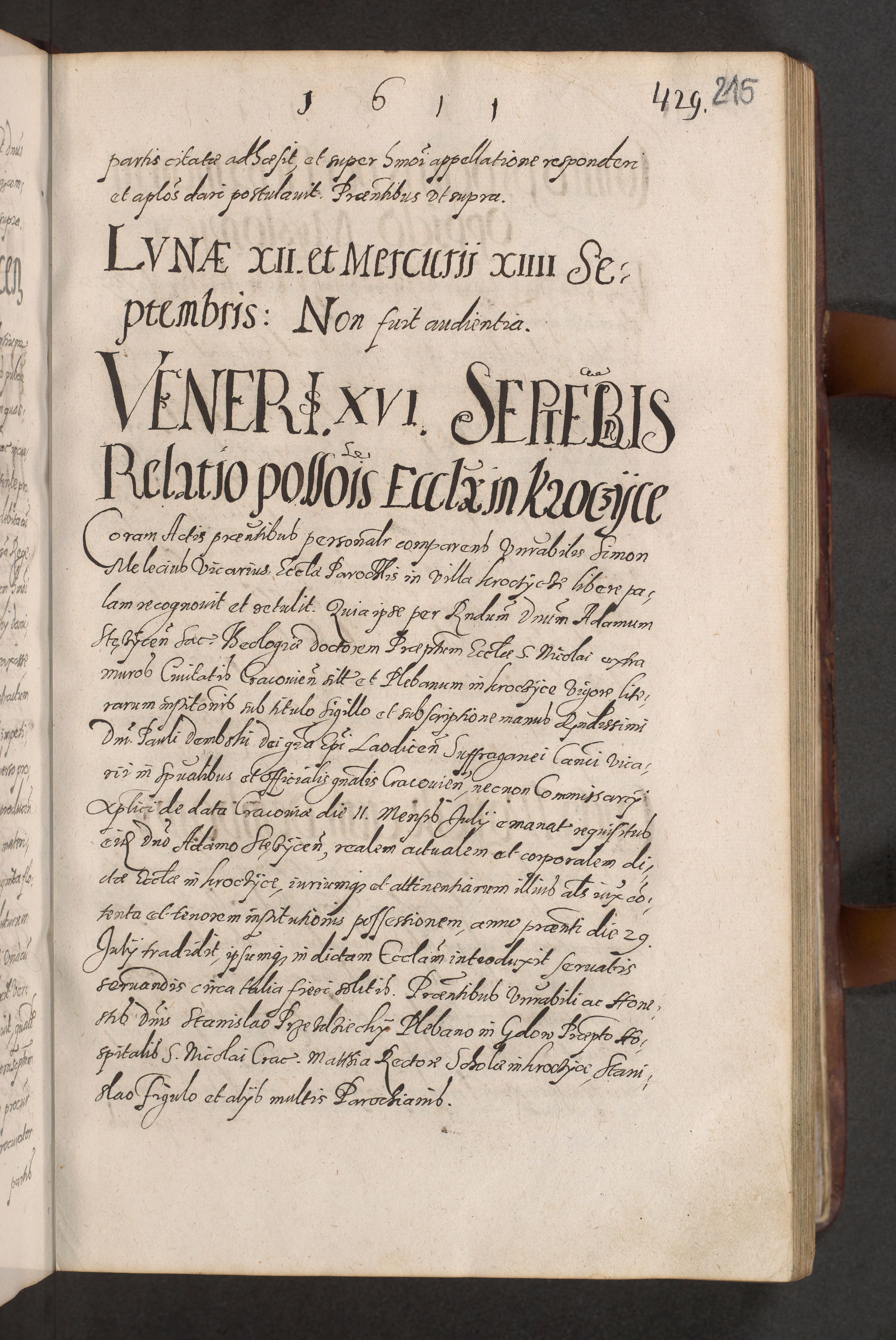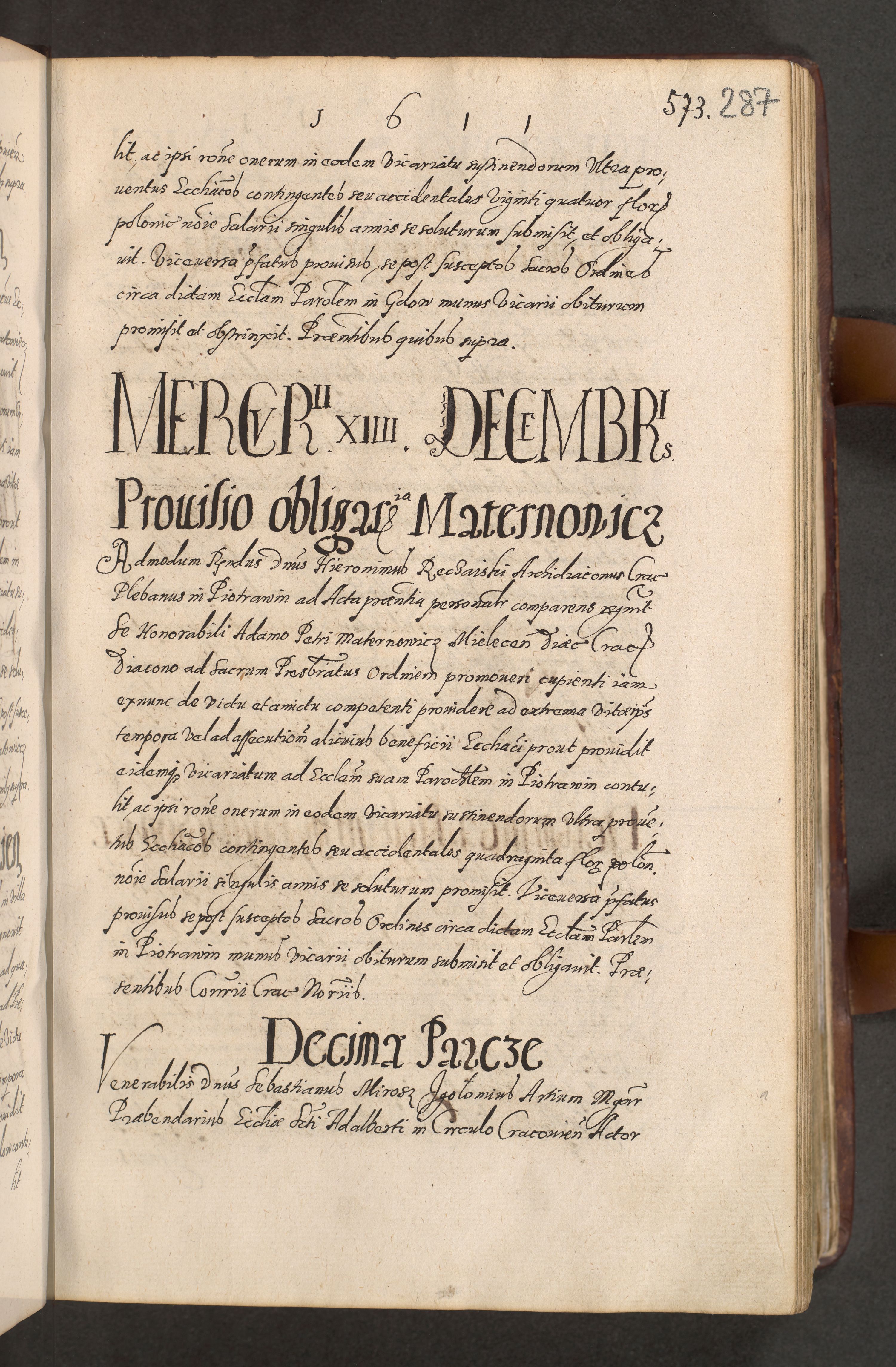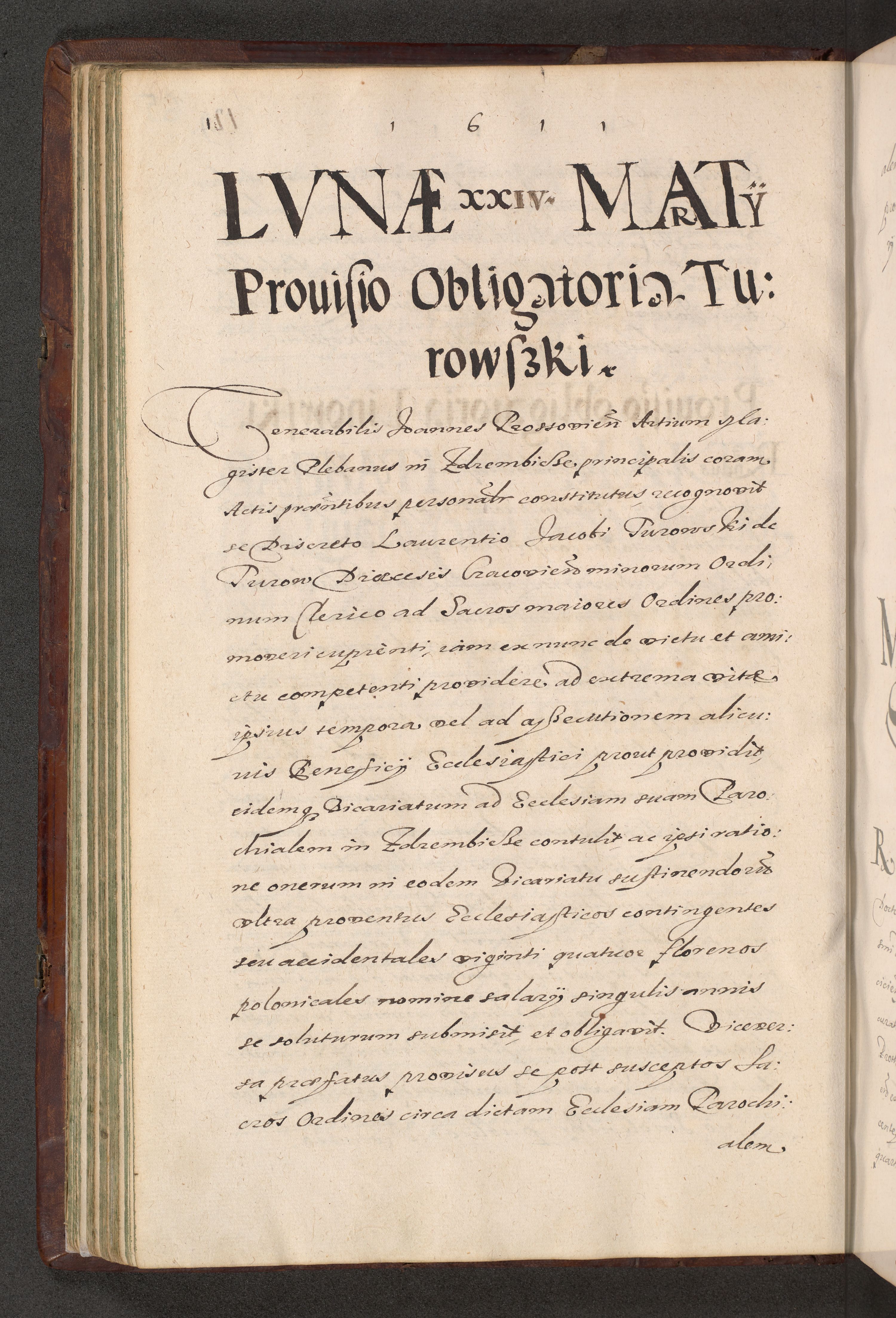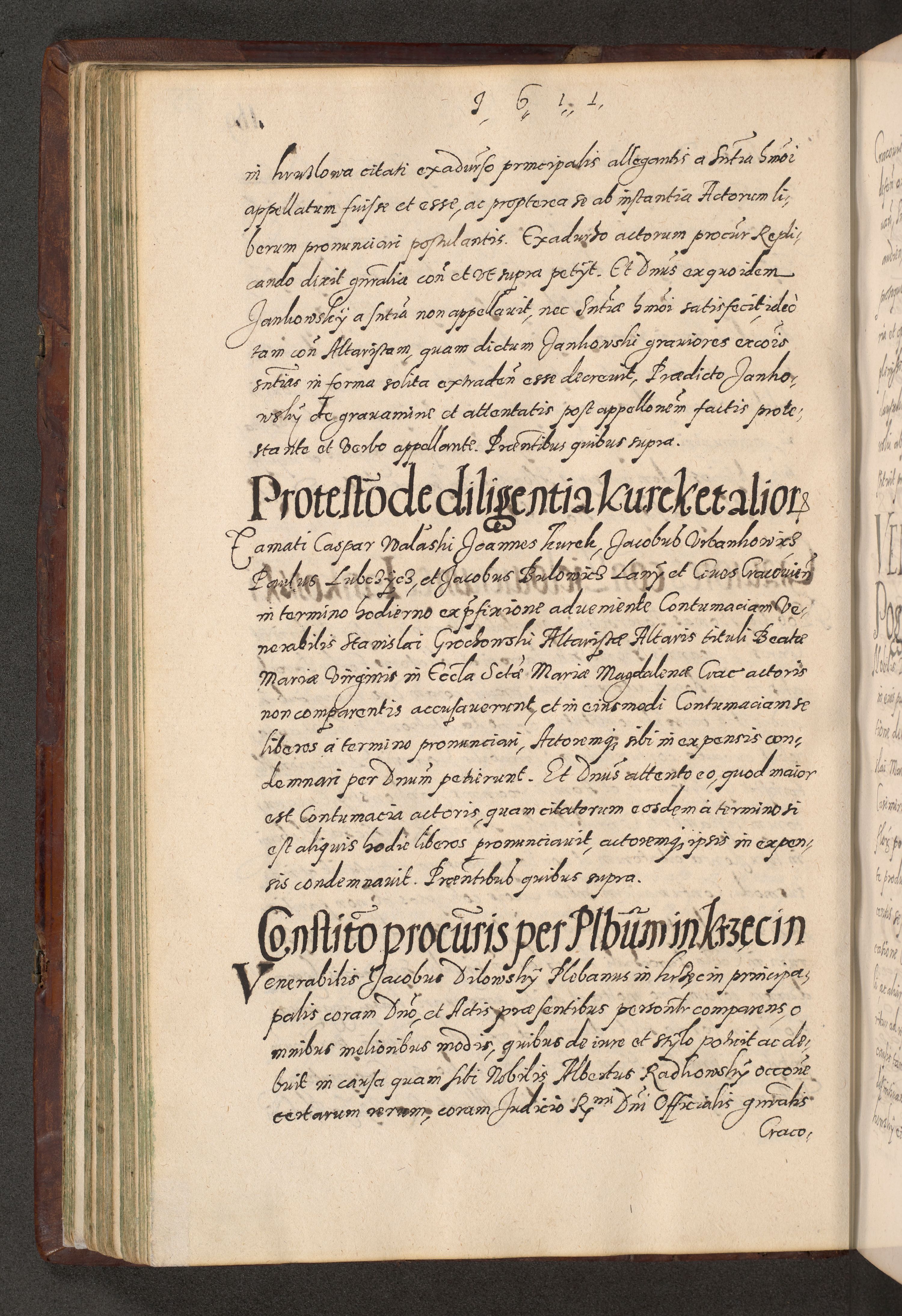 Acta actorum causarum sententiarum tam diffinitiuarum quam interloquutorisrum decretorum obligationum quietationum procuratorum constitutionum etc. etc. coram Reverendo Domino Paulo Dembski Dei et Apostolice Sedis Gratia Episcopalo Dicensis Suffraganeo Canonico Vicario in Spiritualibus et Officiali Generali Cracoviensis ad Annum Domini Millesimum Sexcentesimum Undecimum cuius indictio octava pontificatus Sanctissimi Domini Nostri Domini Pauli Divina Providentia Papae Vti foeliciter continuantur