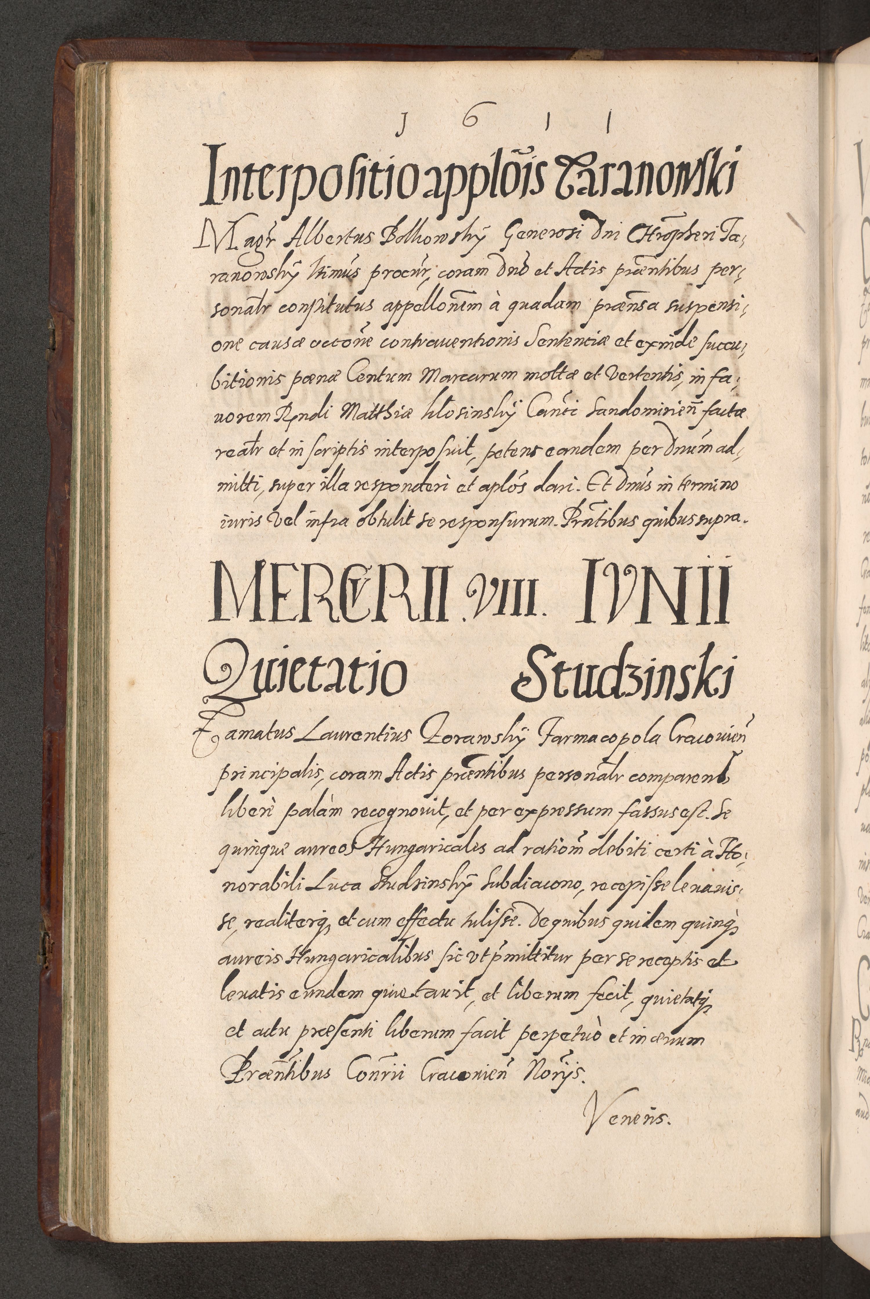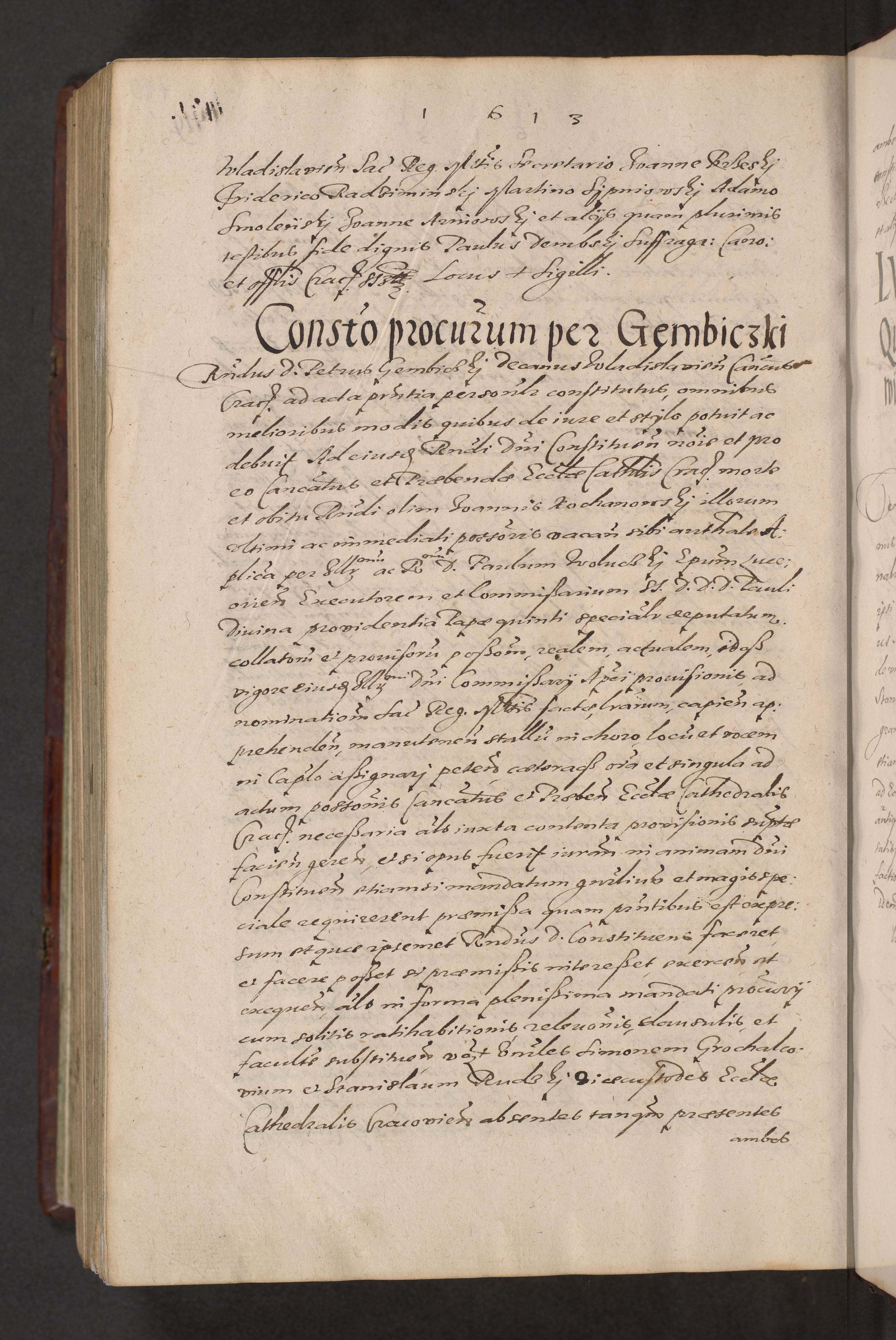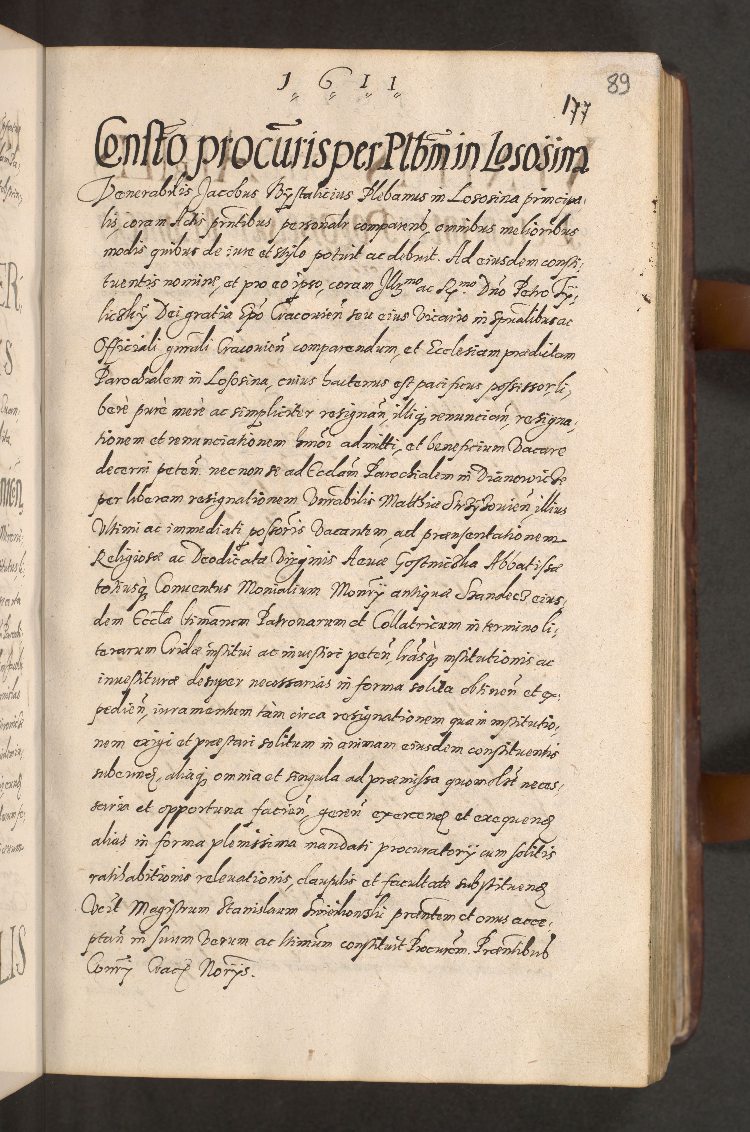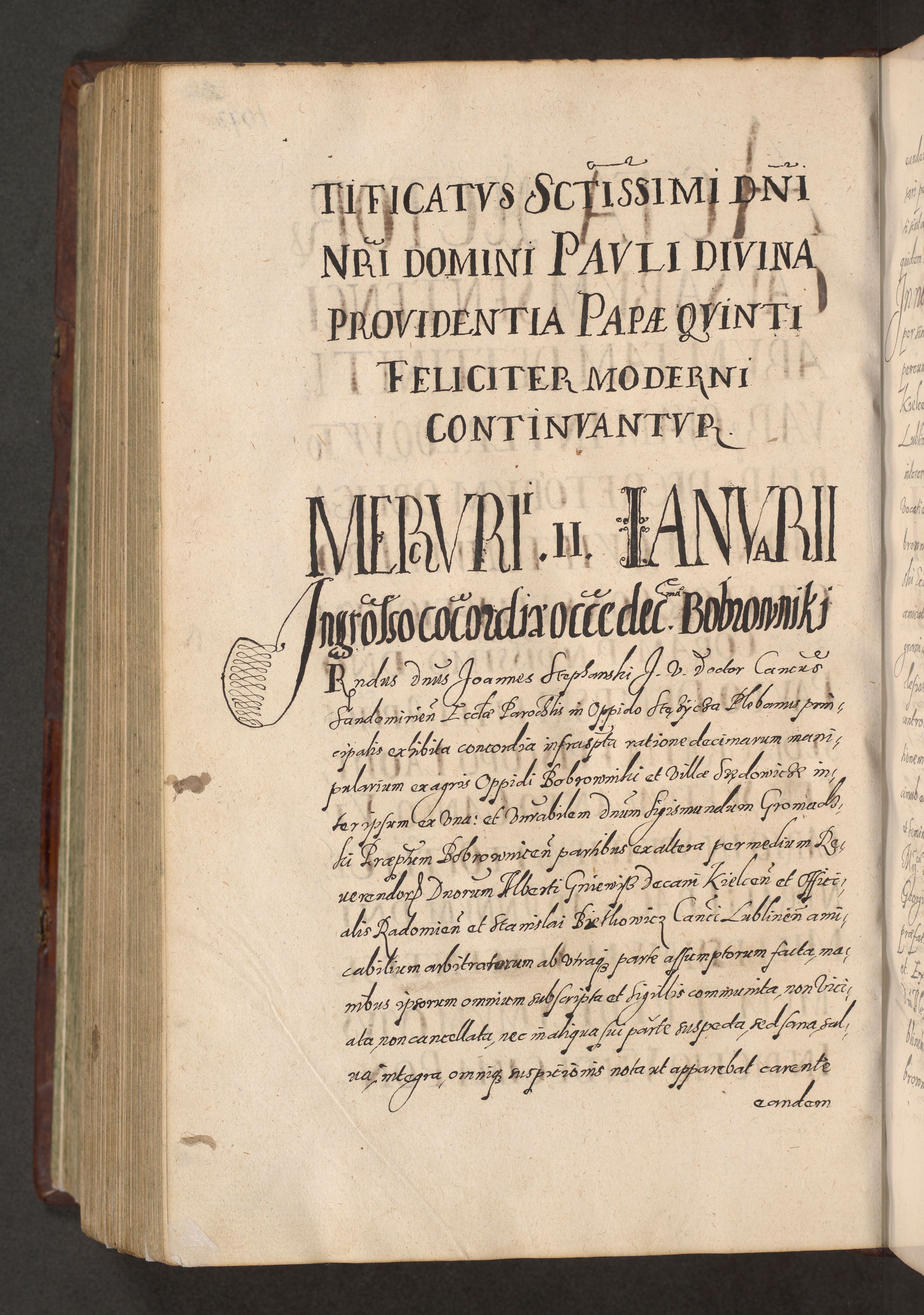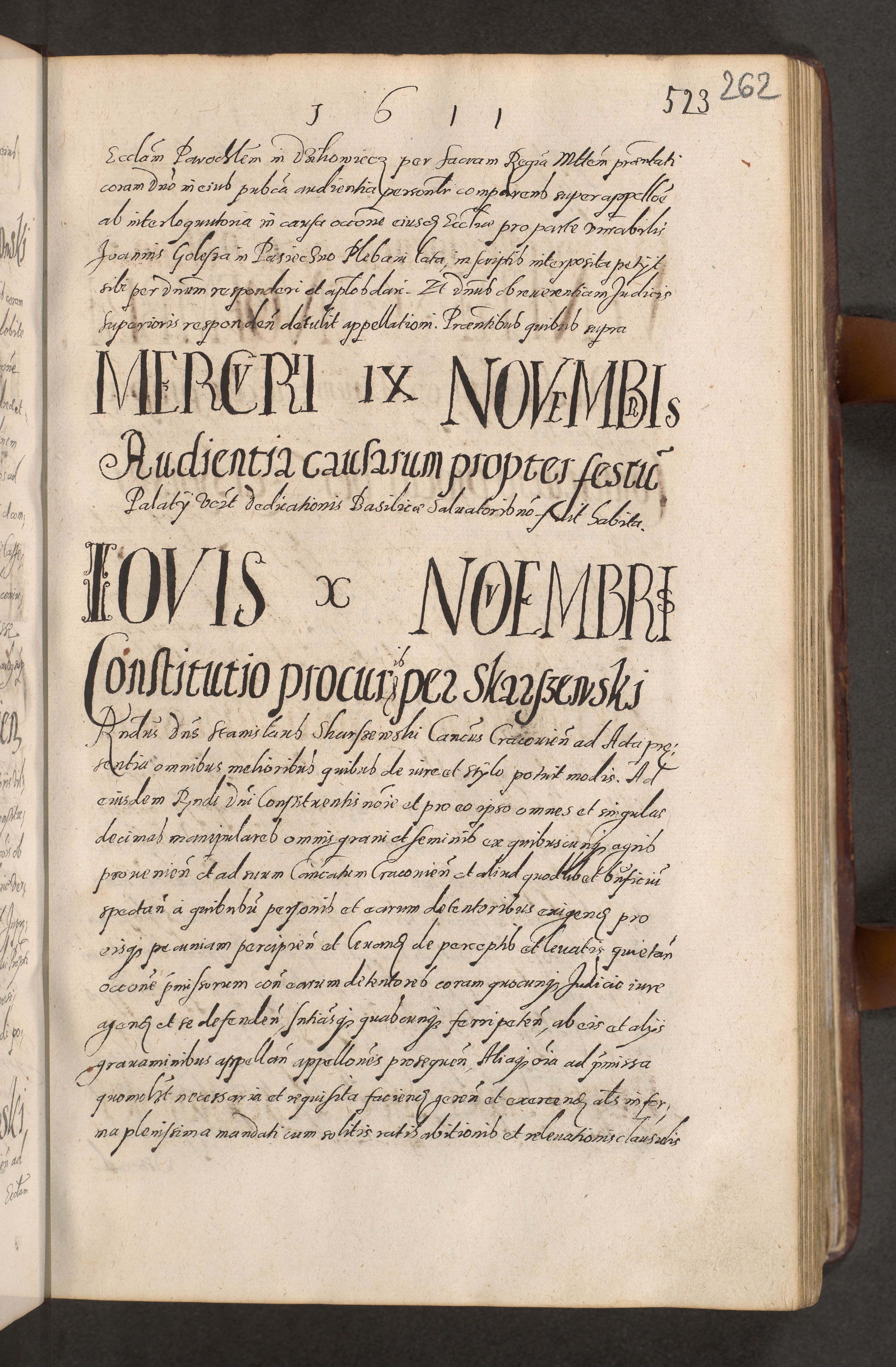 Acta actorum causarum sententiarum tam diffinitiuarum quam interloquutorisrum decretorum obligationum quietationum procuratorum constitutionum etc. etc. coram Reverendo Domino Paulo Dembski Dei et Apostolice Sedis Gratia Episcopalo Dicensis Suffraganeo Canonico Vicario in Spiritualibus et Officiali Generali Cracoviensis ad Annum Domini Millesimum Sexcentesimum Undecimum cuius indictio octava pontificatus Sanctissimi Domini Nostri Domini Pauli Divina Providentia Papae Vti foeliciter continuantur