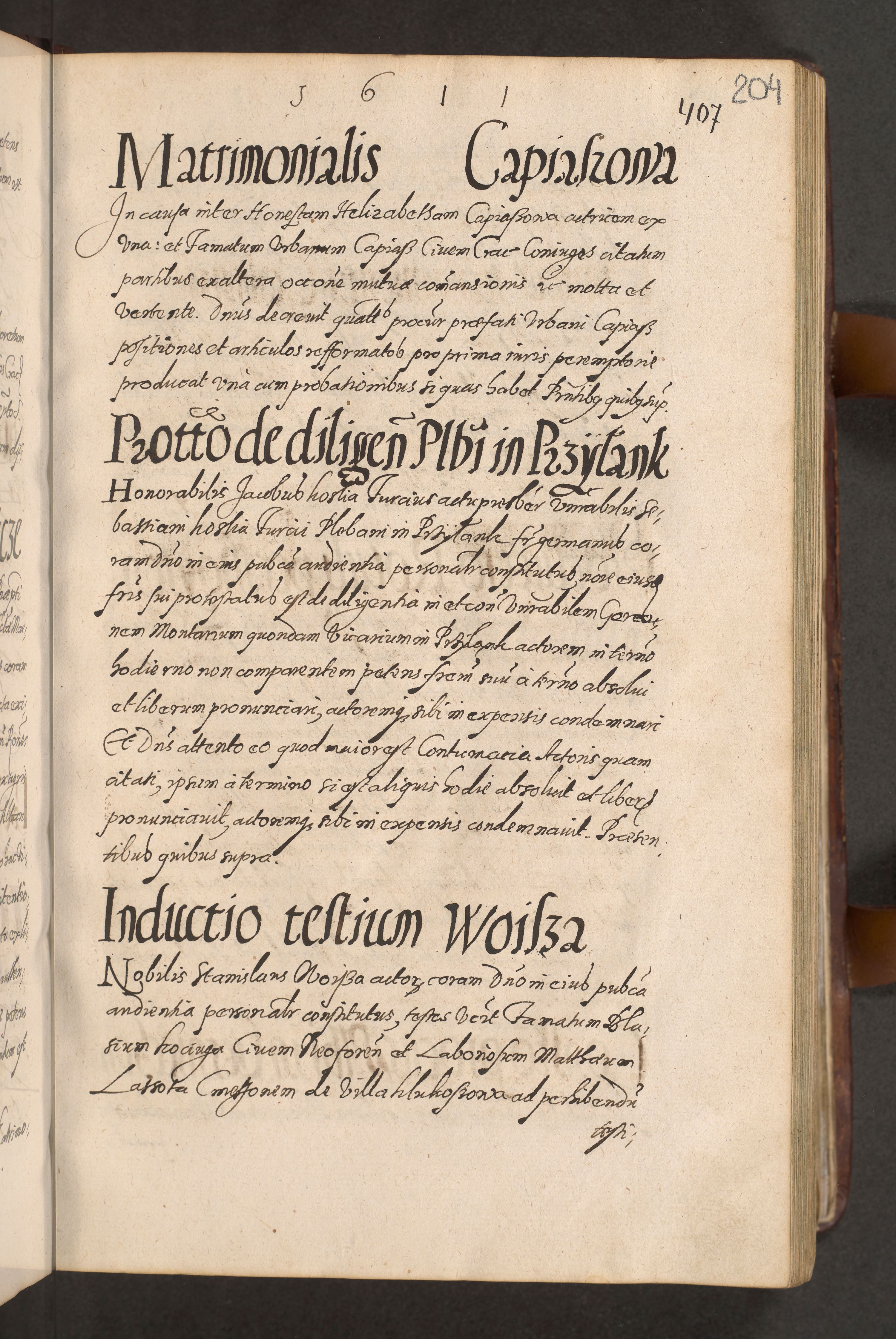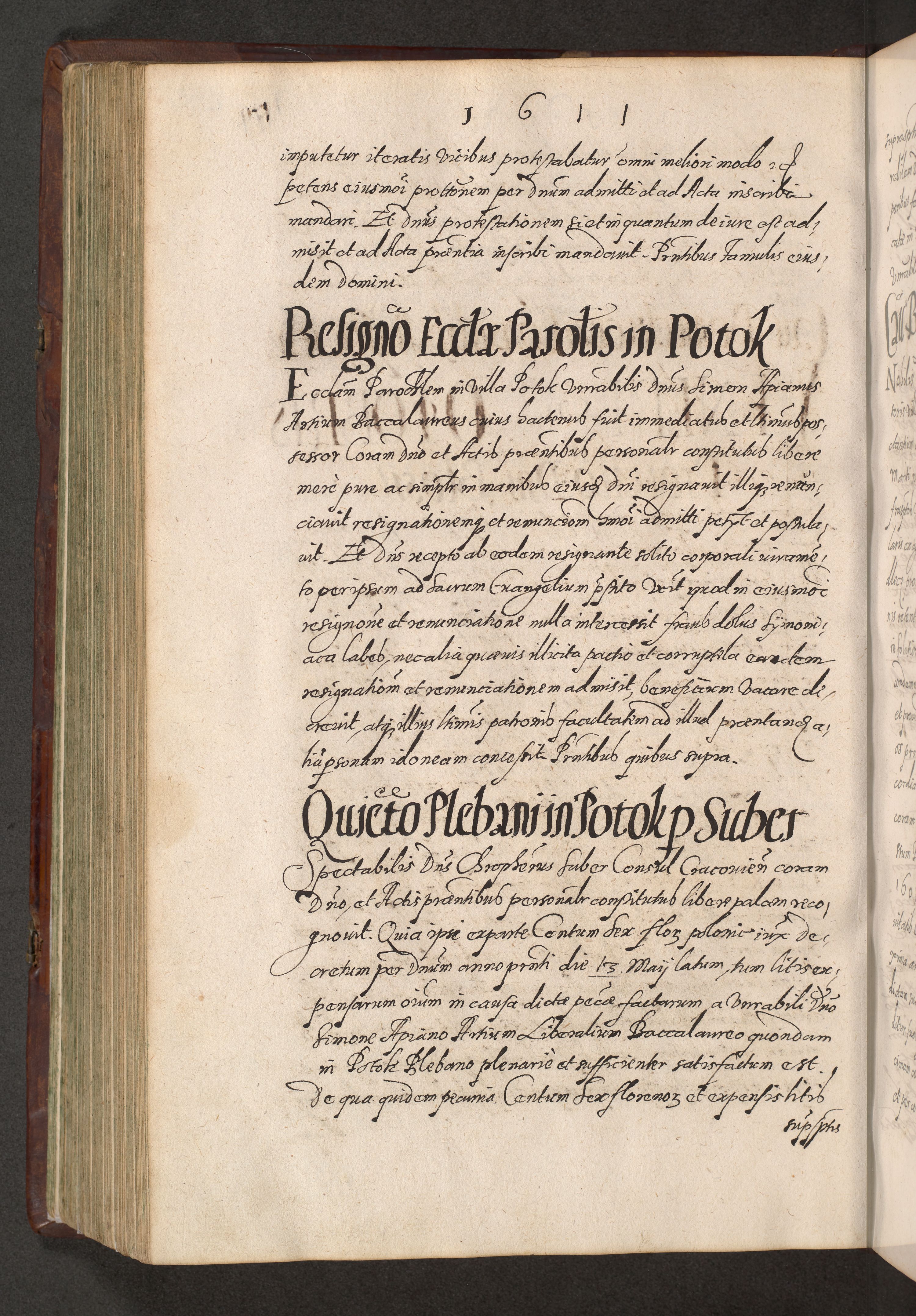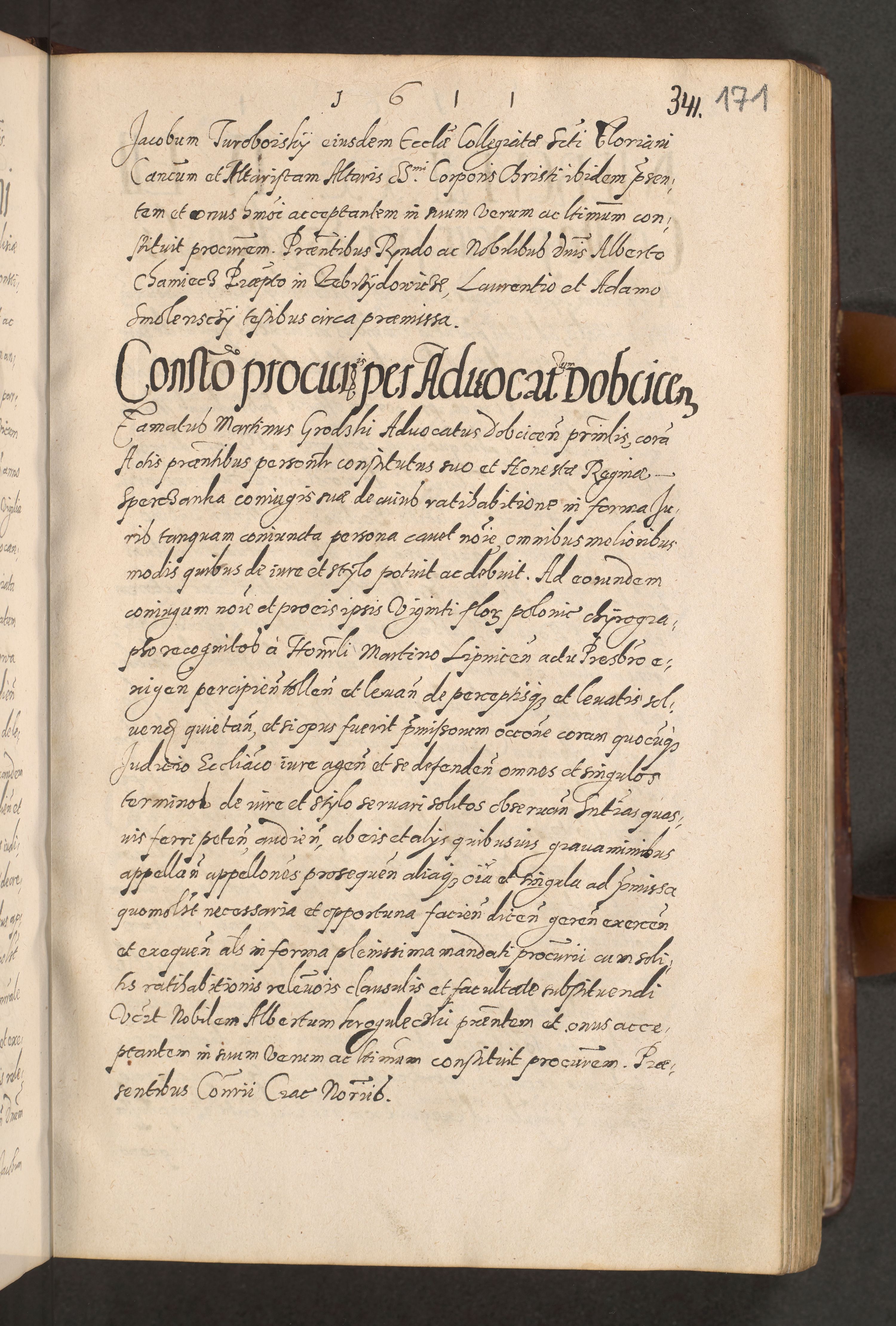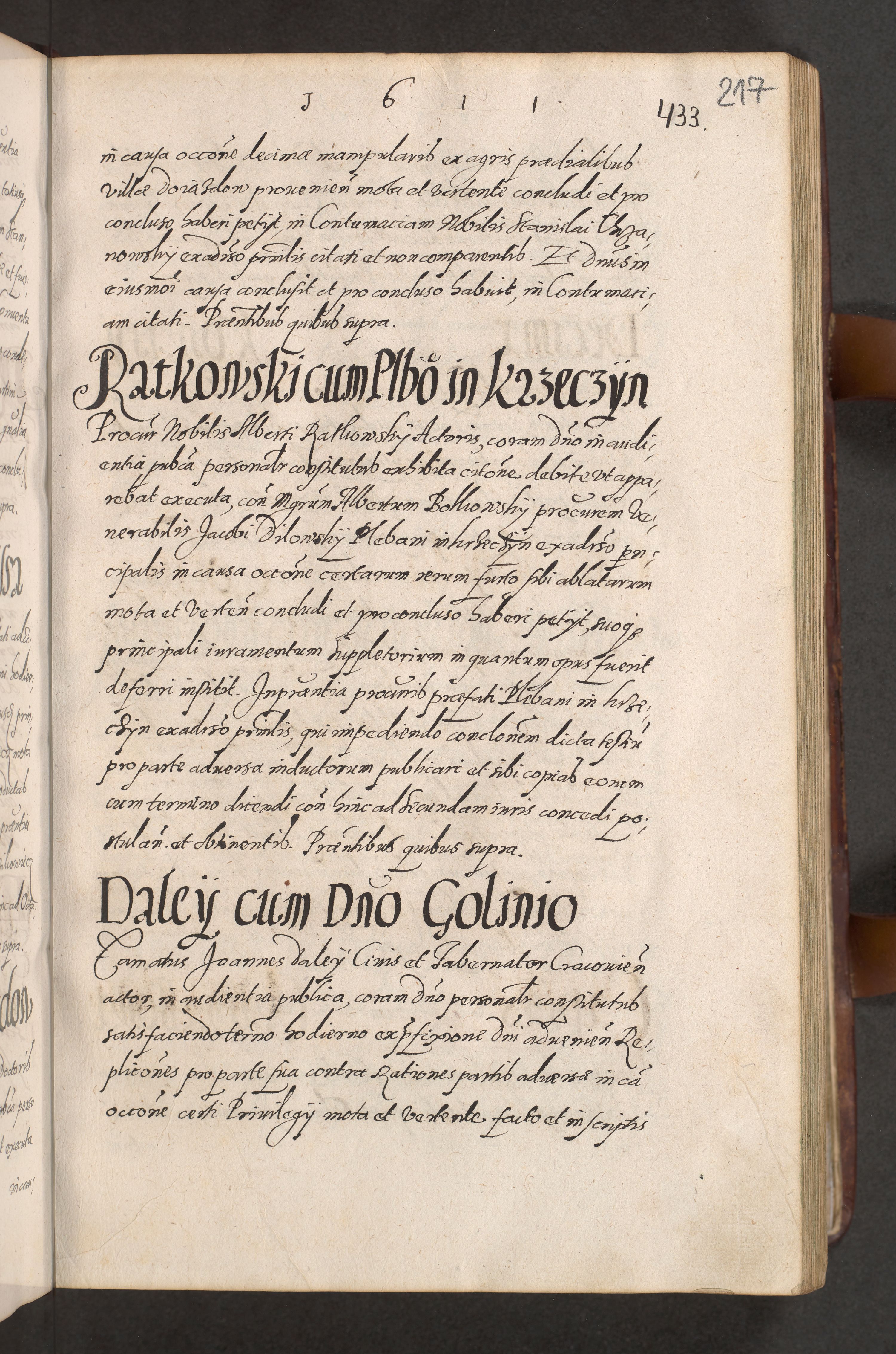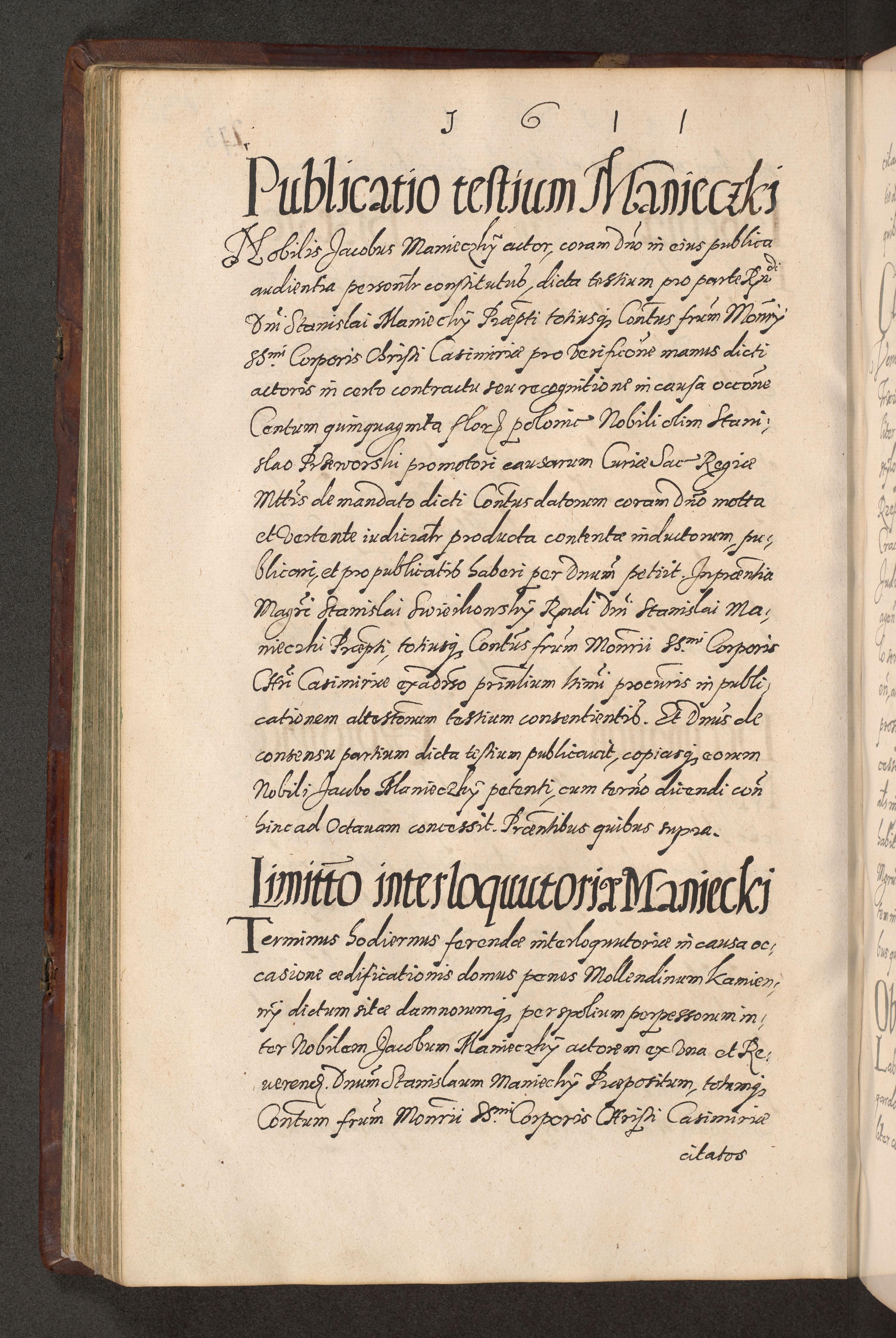 Acta actorum causarum sententiarum tam diffinitiuarum quam interloquutorisrum decretorum obligationum quietationum procuratorum constitutionum etc. etc. coram Reverendo Domino Paulo Dembski Dei et Apostolice Sedis Gratia Episcopalo Dicensis Suffraganeo Canonico Vicario in Spiritualibus et Officiali Generali Cracoviensis ad Annum Domini Millesimum Sexcentesimum Undecimum cuius indictio octava pontificatus Sanctissimi Domini Nostri Domini Pauli Divina Providentia Papae Vti foeliciter continuantur