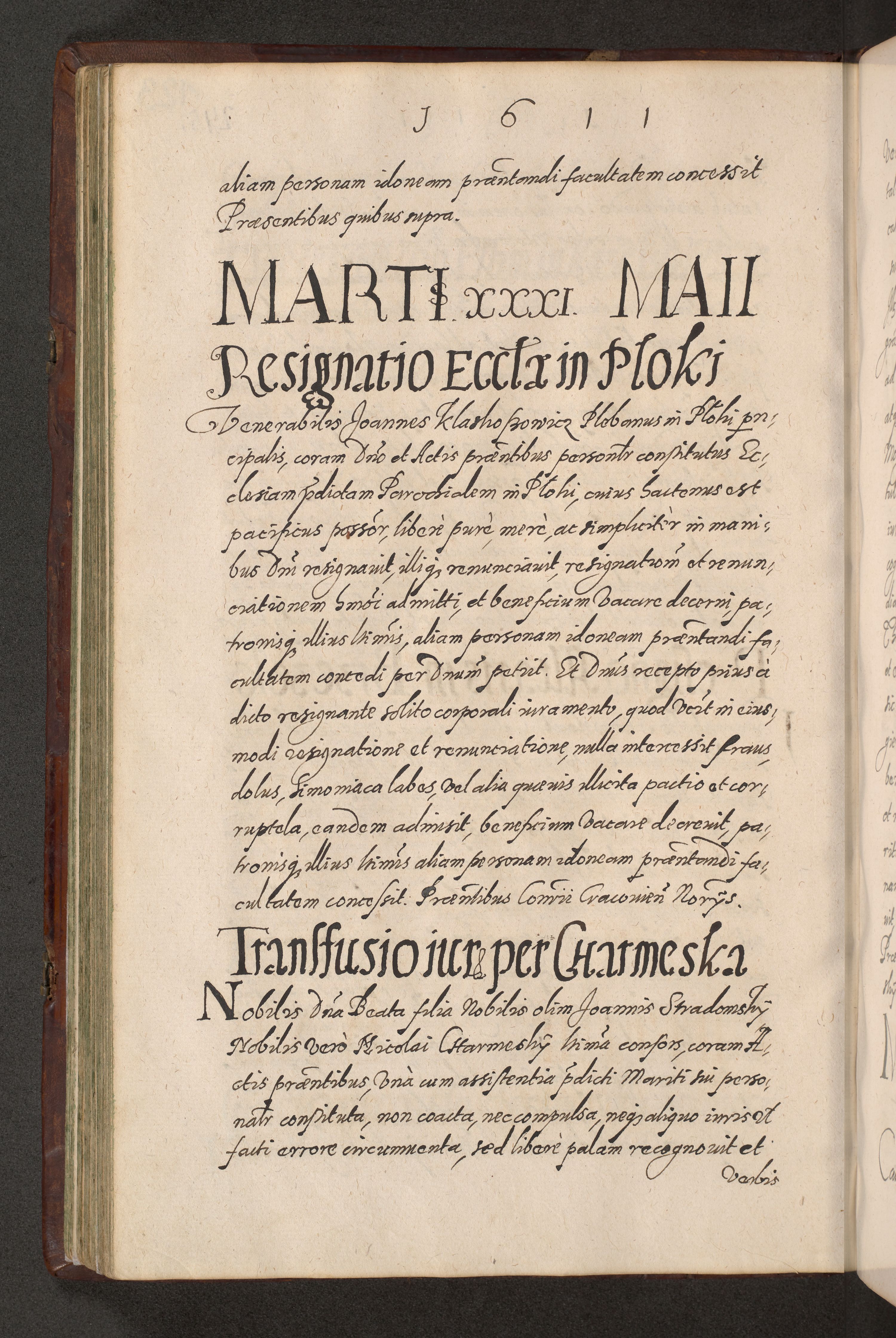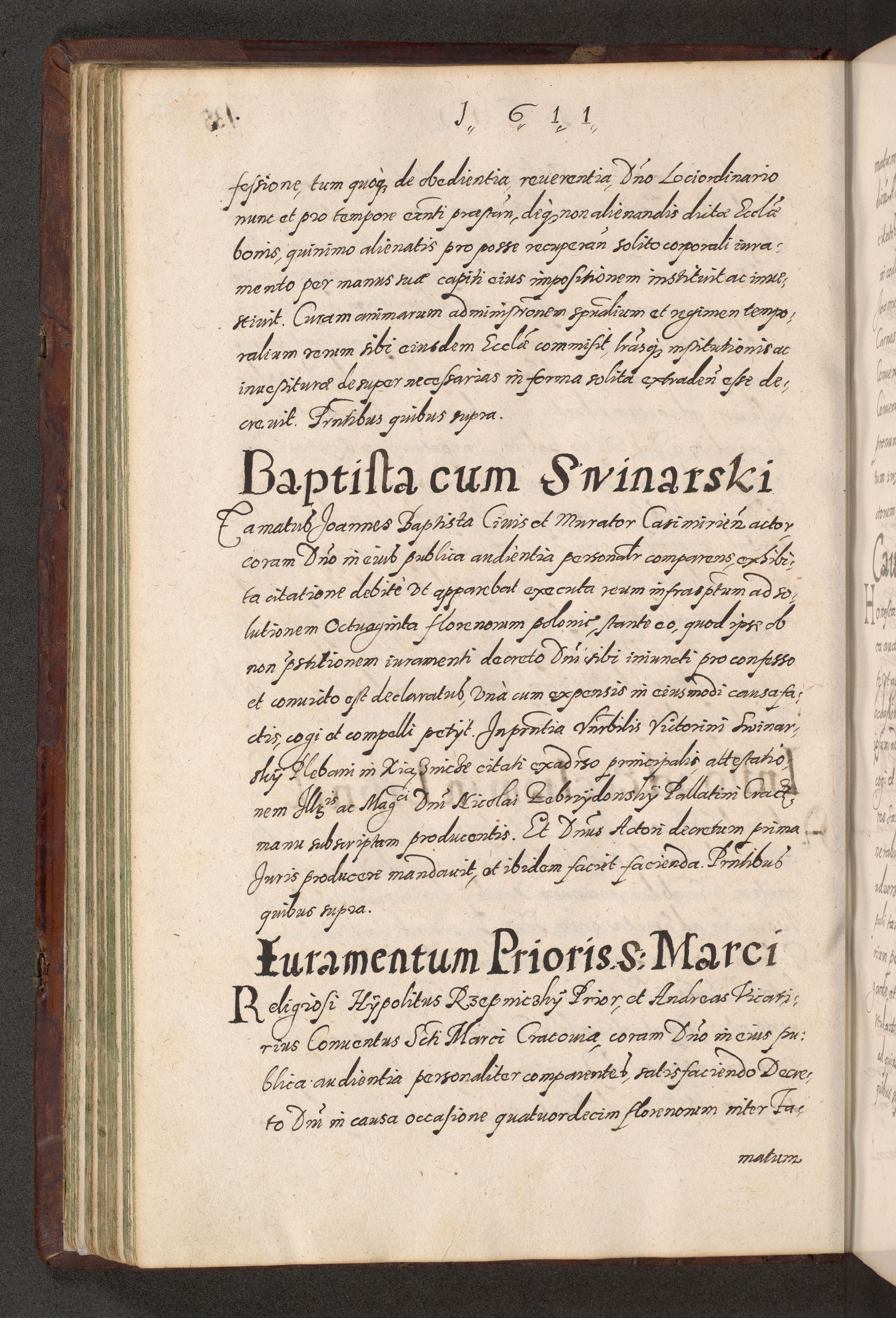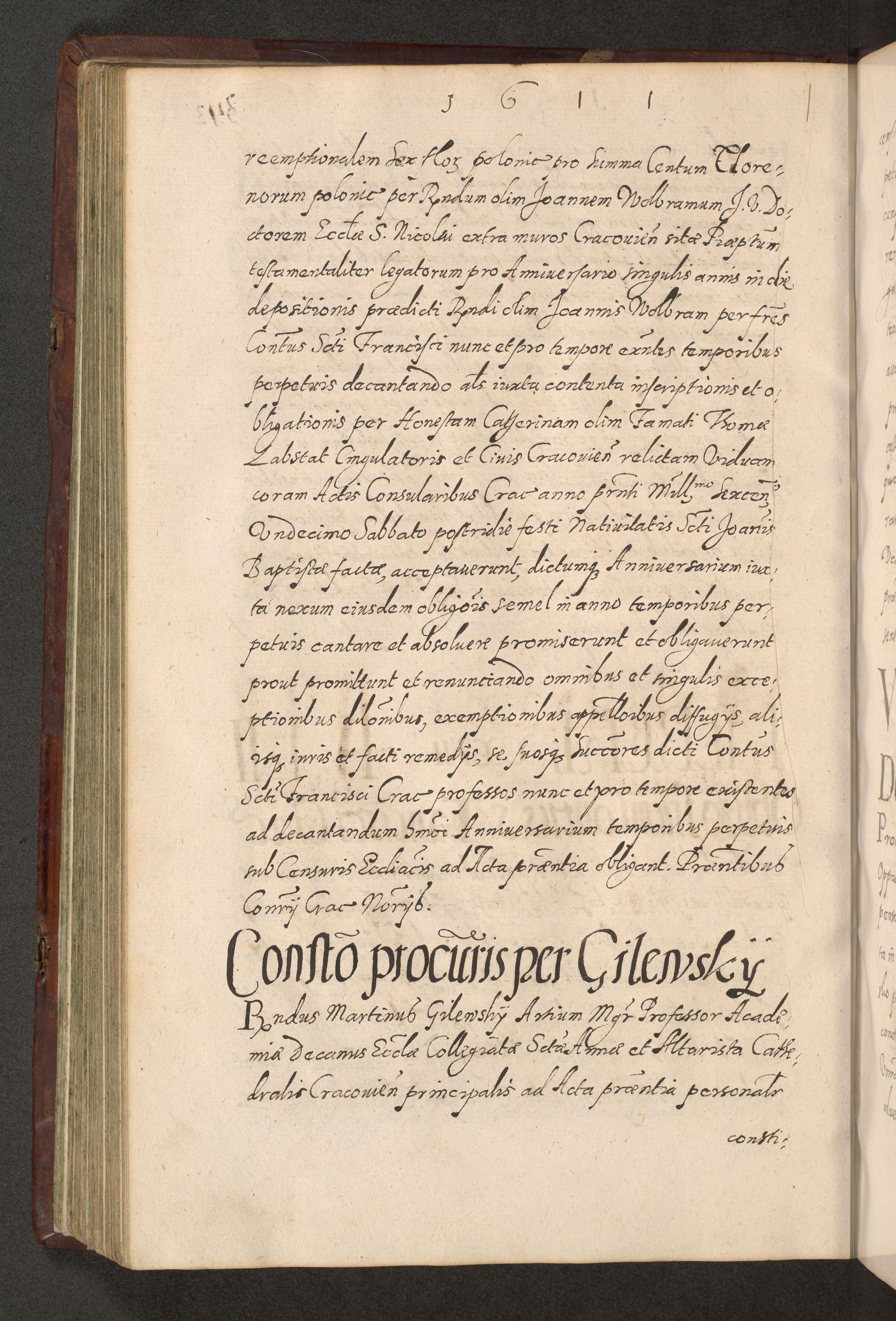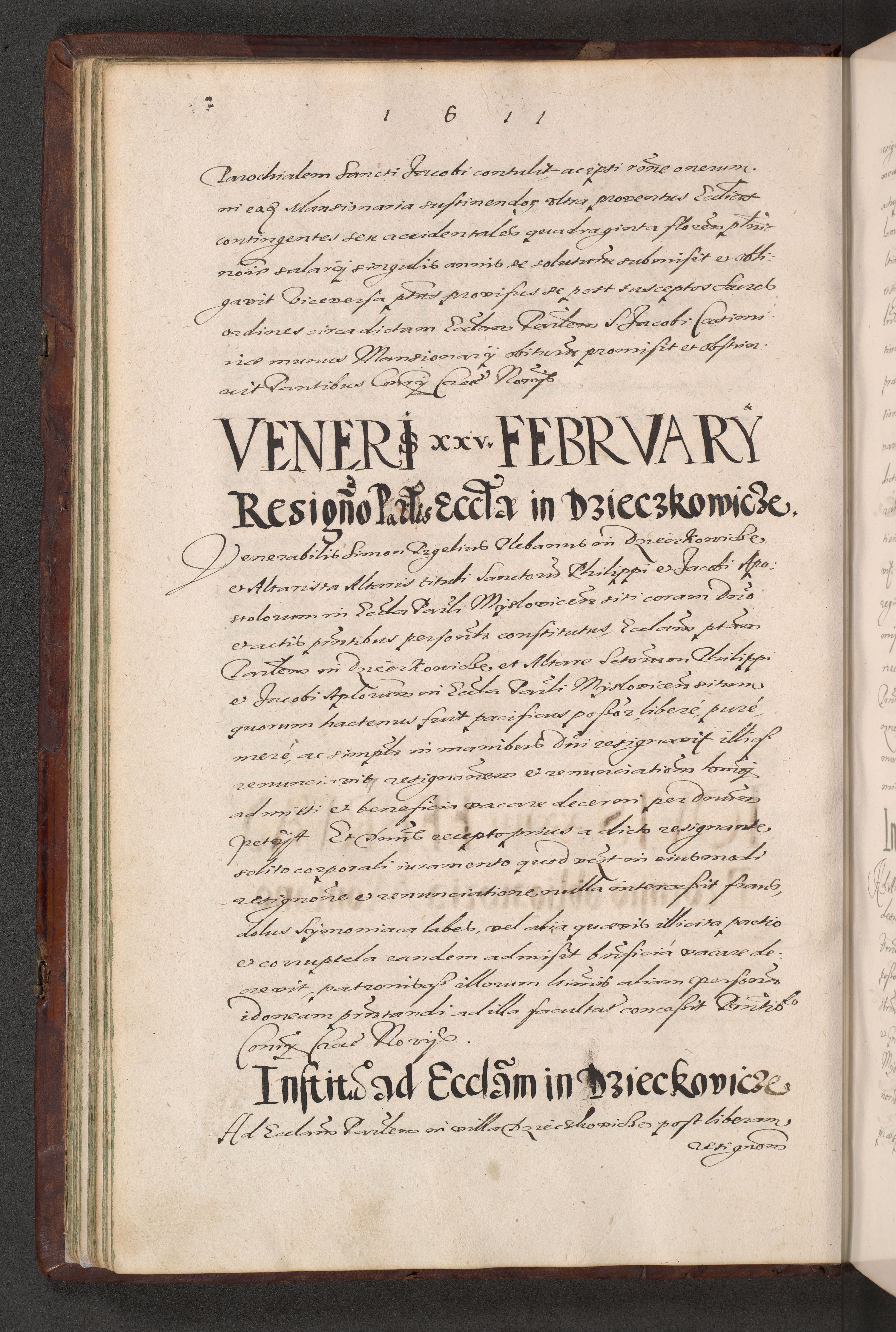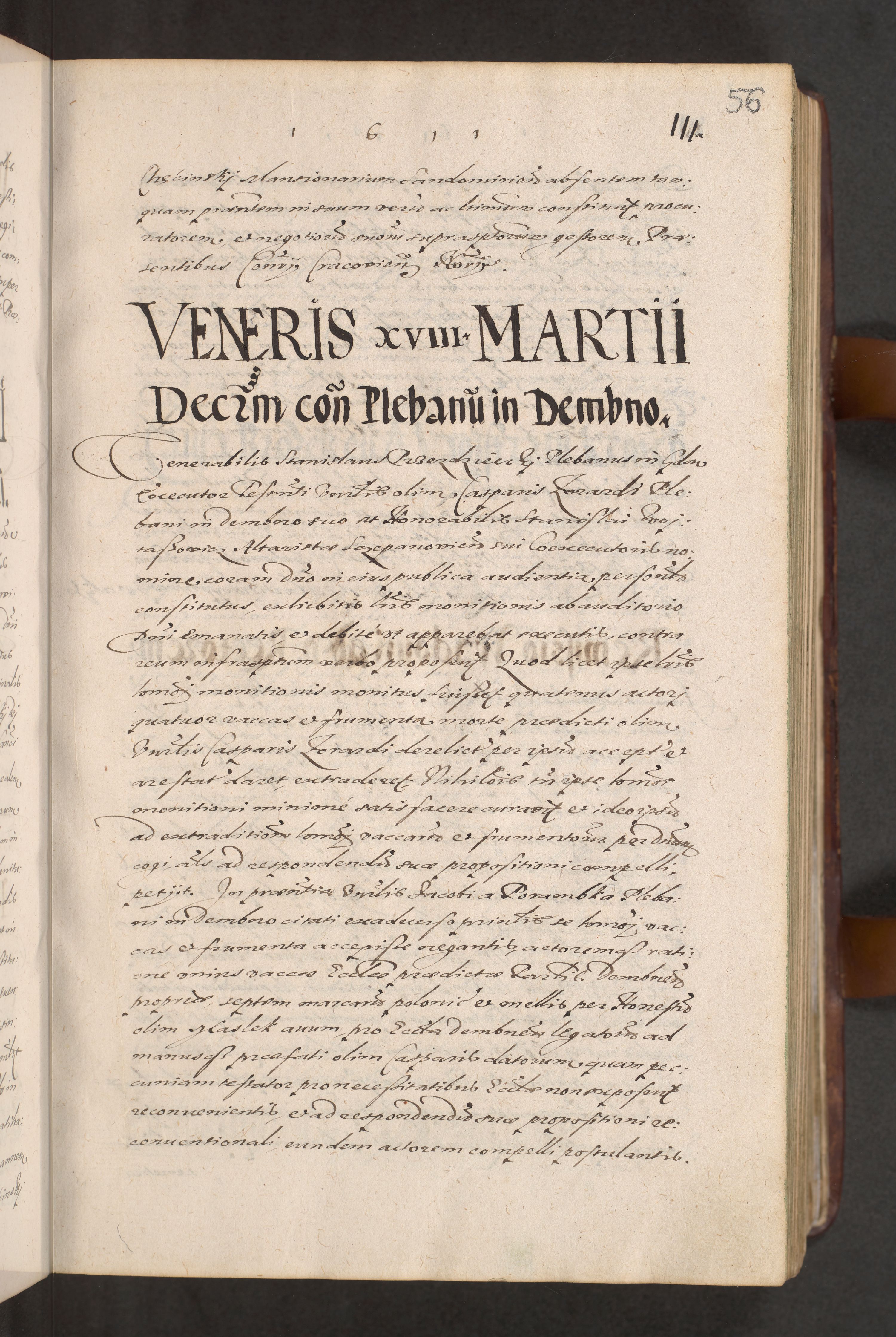 Acta actorum causarum sententiarum tam diffinitiuarum quam interloquutorisrum decretorum obligationum quietationum procuratorum constitutionum etc. etc. coram Reverendo Domino Paulo Dembski Dei et Apostolice Sedis Gratia Episcopalo Dicensis Suffraganeo Canonico Vicario in Spiritualibus et Officiali Generali Cracoviensis ad Annum Domini Millesimum Sexcentesimum Undecimum cuius indictio octava pontificatus Sanctissimi Domini Nostri Domini Pauli Divina Providentia Papae Vti foeliciter continuantur
