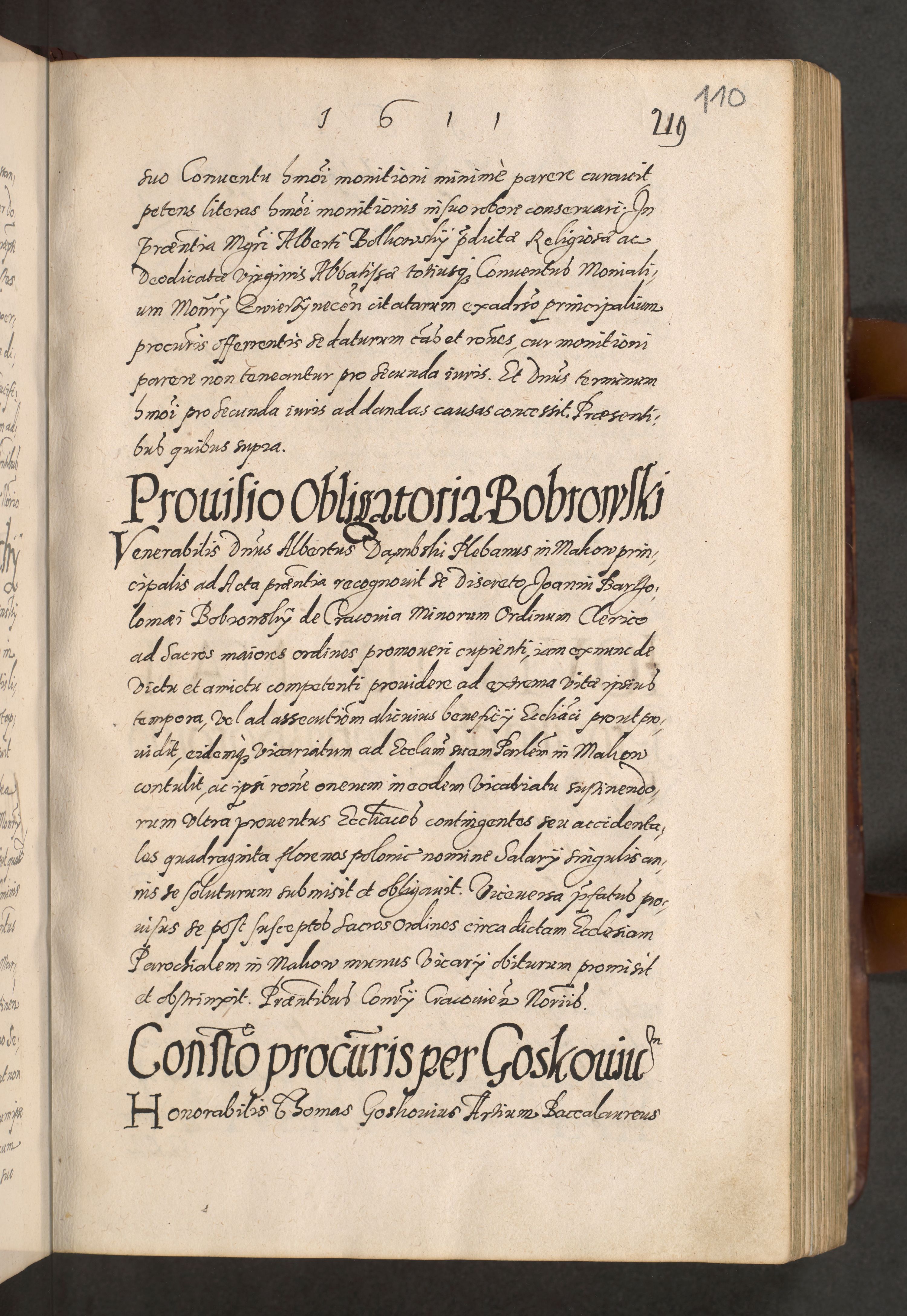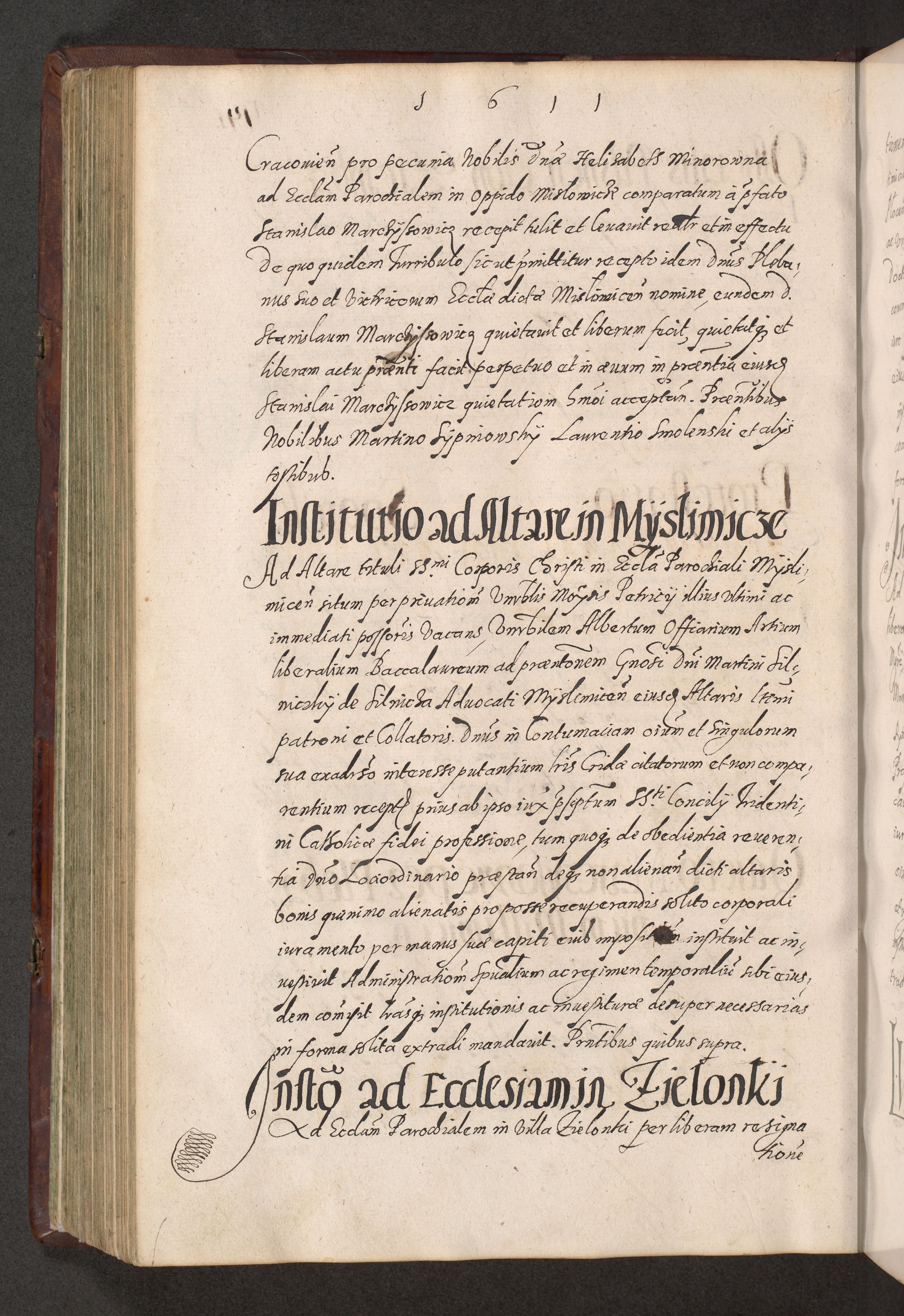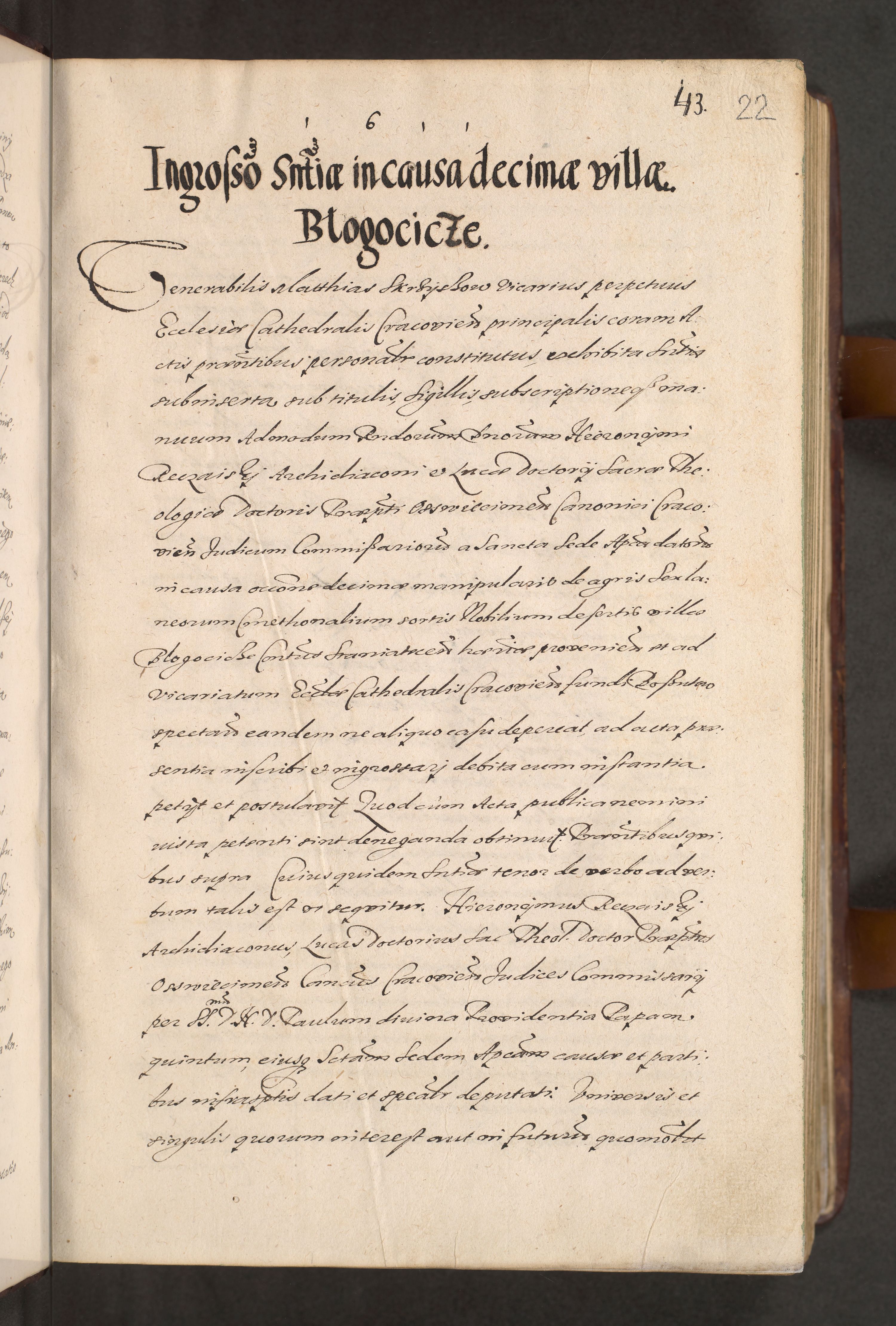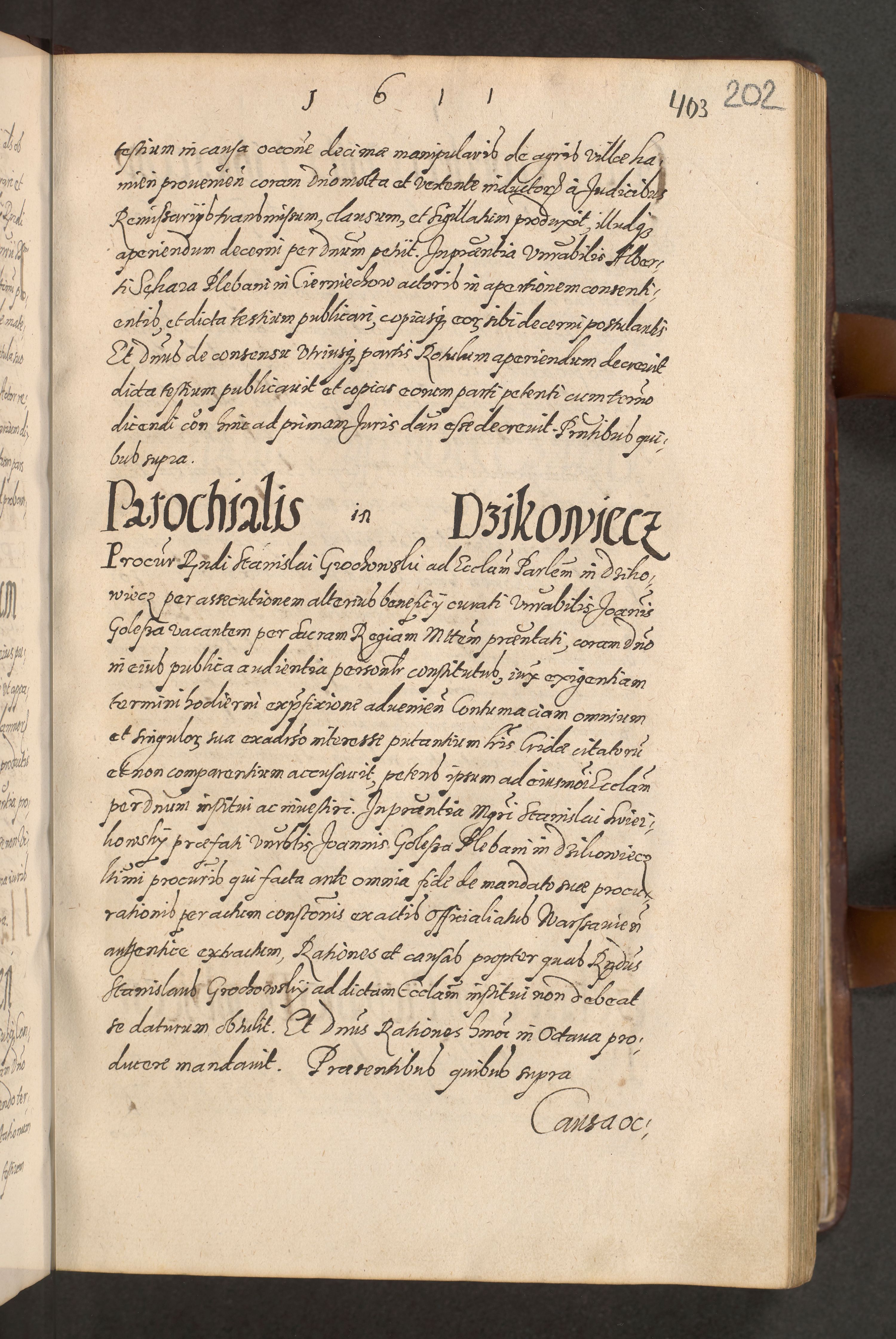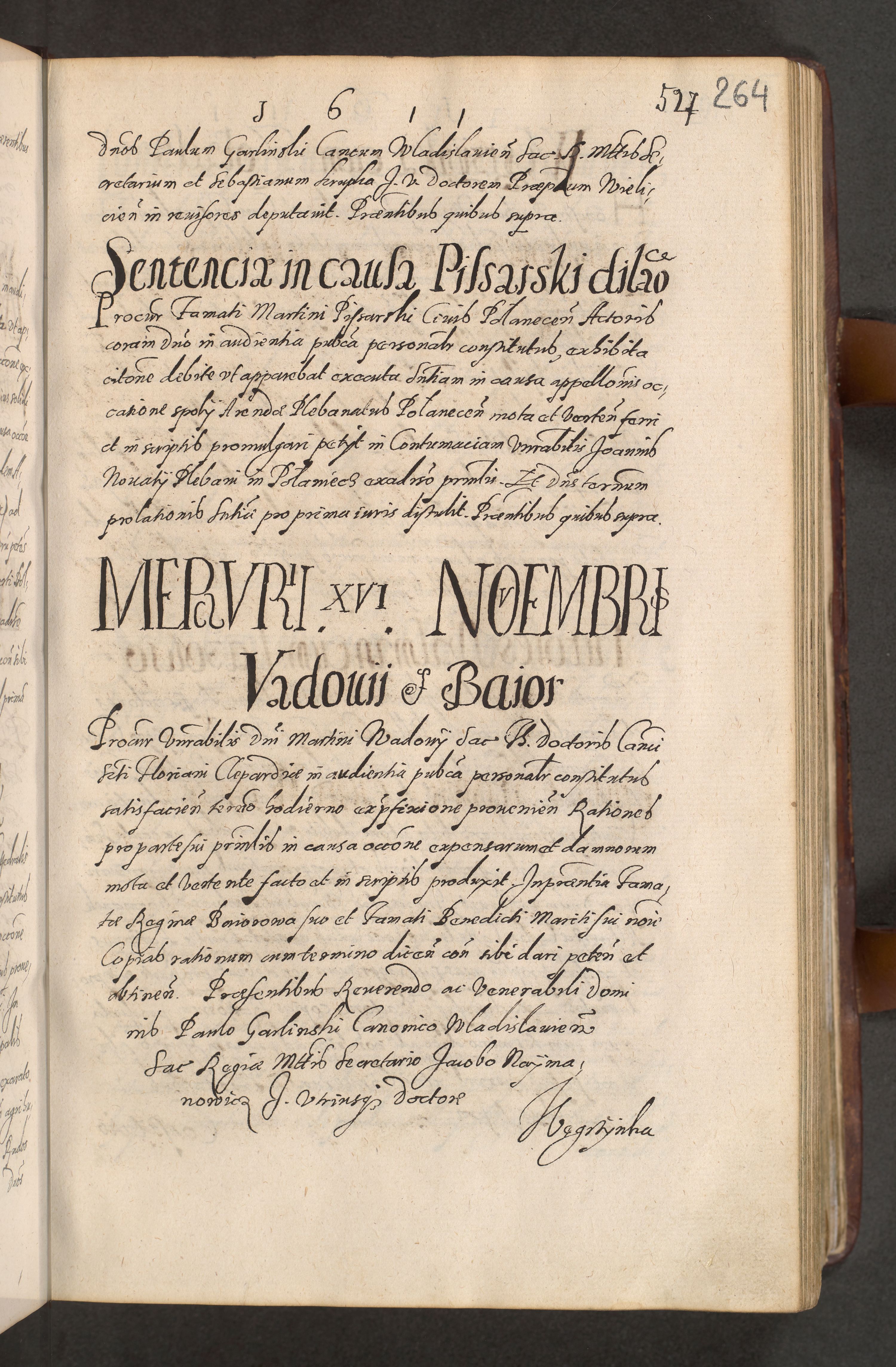 Acta actorum causarum sententiarum tam diffinitiuarum quam interloquutorisrum decretorum obligationum quietationum procuratorum constitutionum etc. etc. coram Reverendo Domino Paulo Dembski Dei et Apostolice Sedis Gratia Episcopalo Dicensis Suffraganeo Canonico Vicario in Spiritualibus et Officiali Generali Cracoviensis ad Annum Domini Millesimum Sexcentesimum Undecimum cuius indictio octava pontificatus Sanctissimi Domini Nostri Domini Pauli Divina Providentia Papae Vti foeliciter continuantur