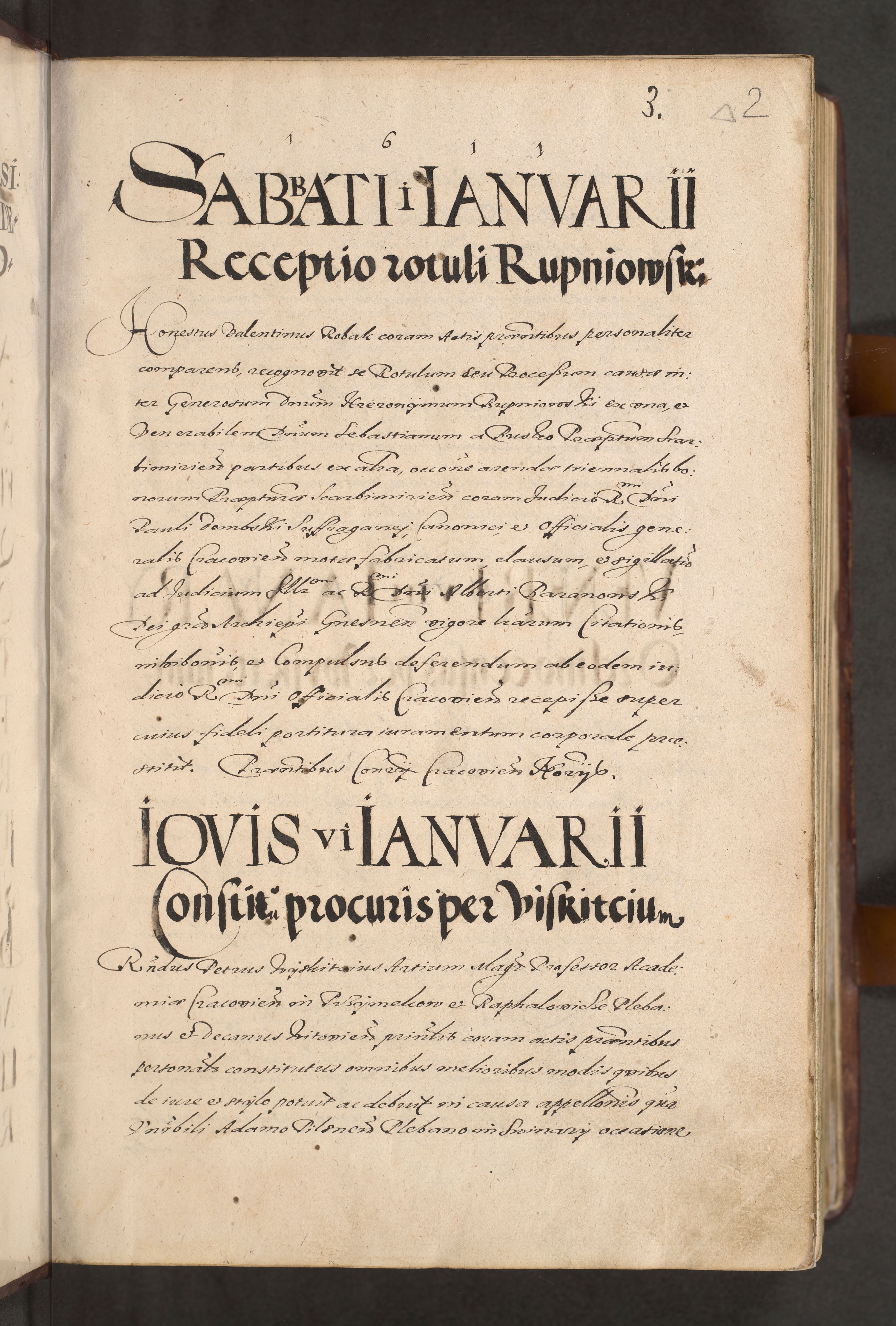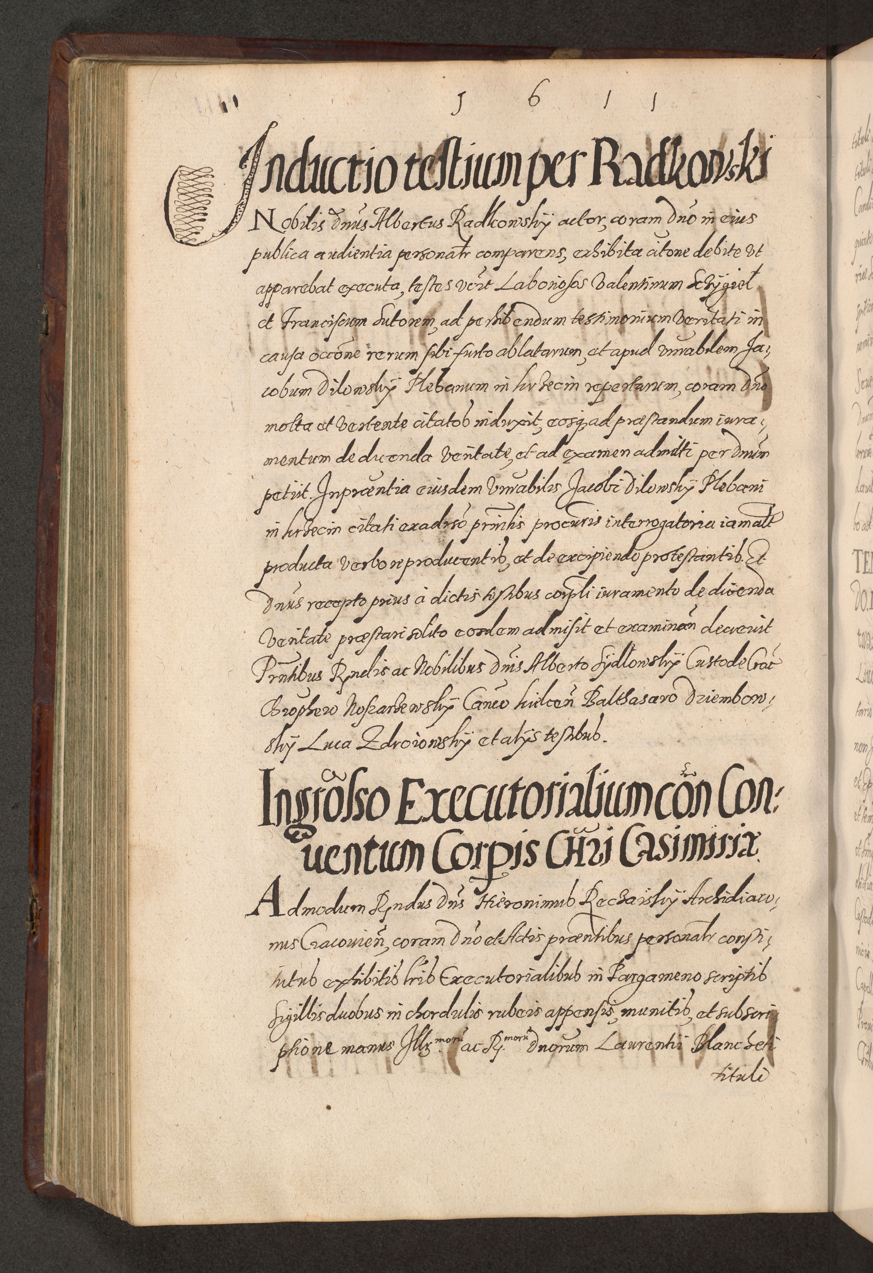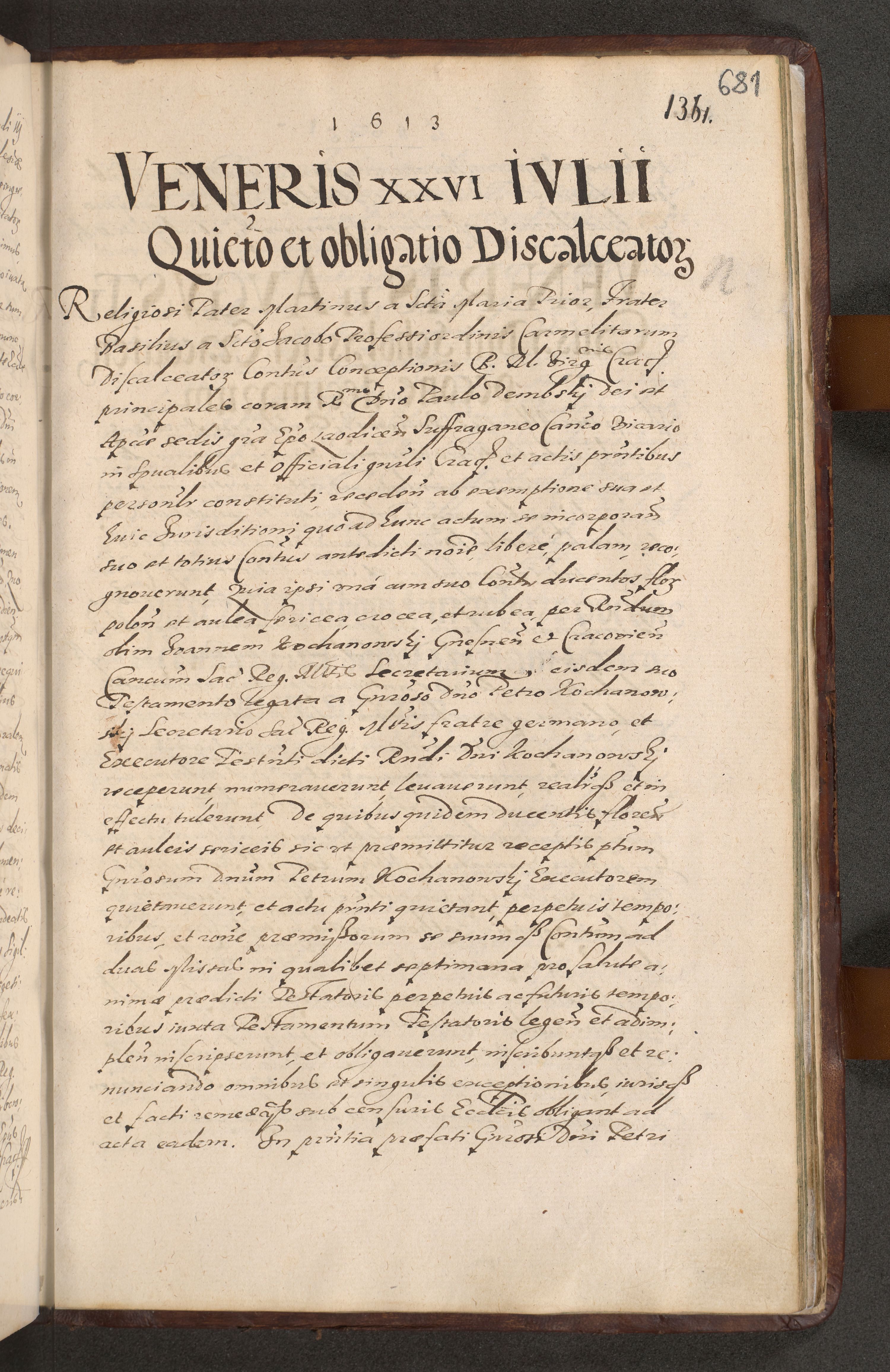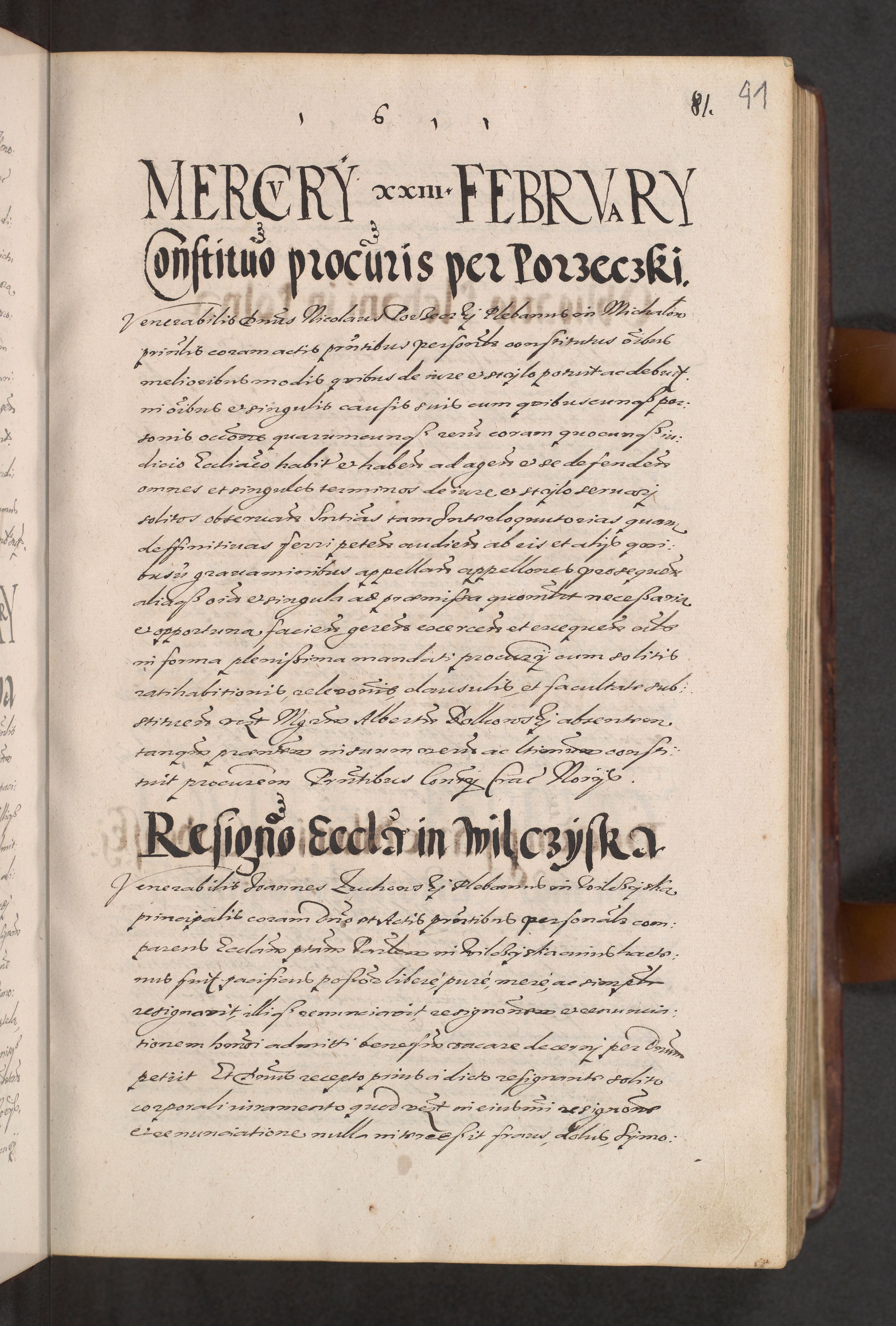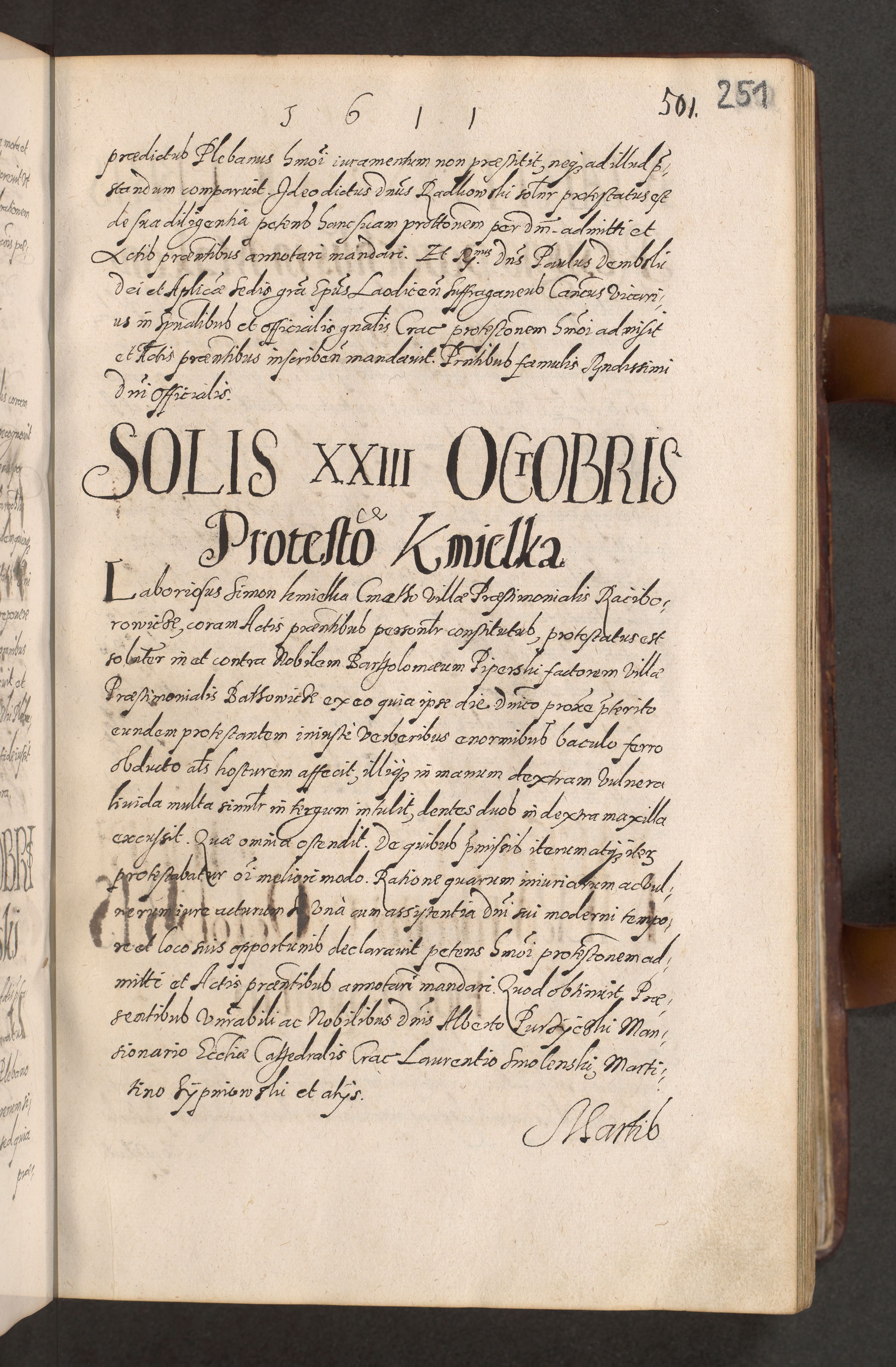 Acta actorum causarum sententiarum tam diffinitiuarum quam interloquutorisrum decretorum obligationum quietationum procuratorum constitutionum etc. etc. coram Reverendo Domino Paulo Dembski Dei et Apostolice Sedis Gratia Episcopalo Dicensis Suffraganeo Canonico Vicario in Spiritualibus et Officiali Generali Cracoviensis ad Annum Domini Millesimum Sexcentesimum Undecimum cuius indictio octava pontificatus Sanctissimi Domini Nostri Domini Pauli Divina Providentia Papae Vti foeliciter continuantur