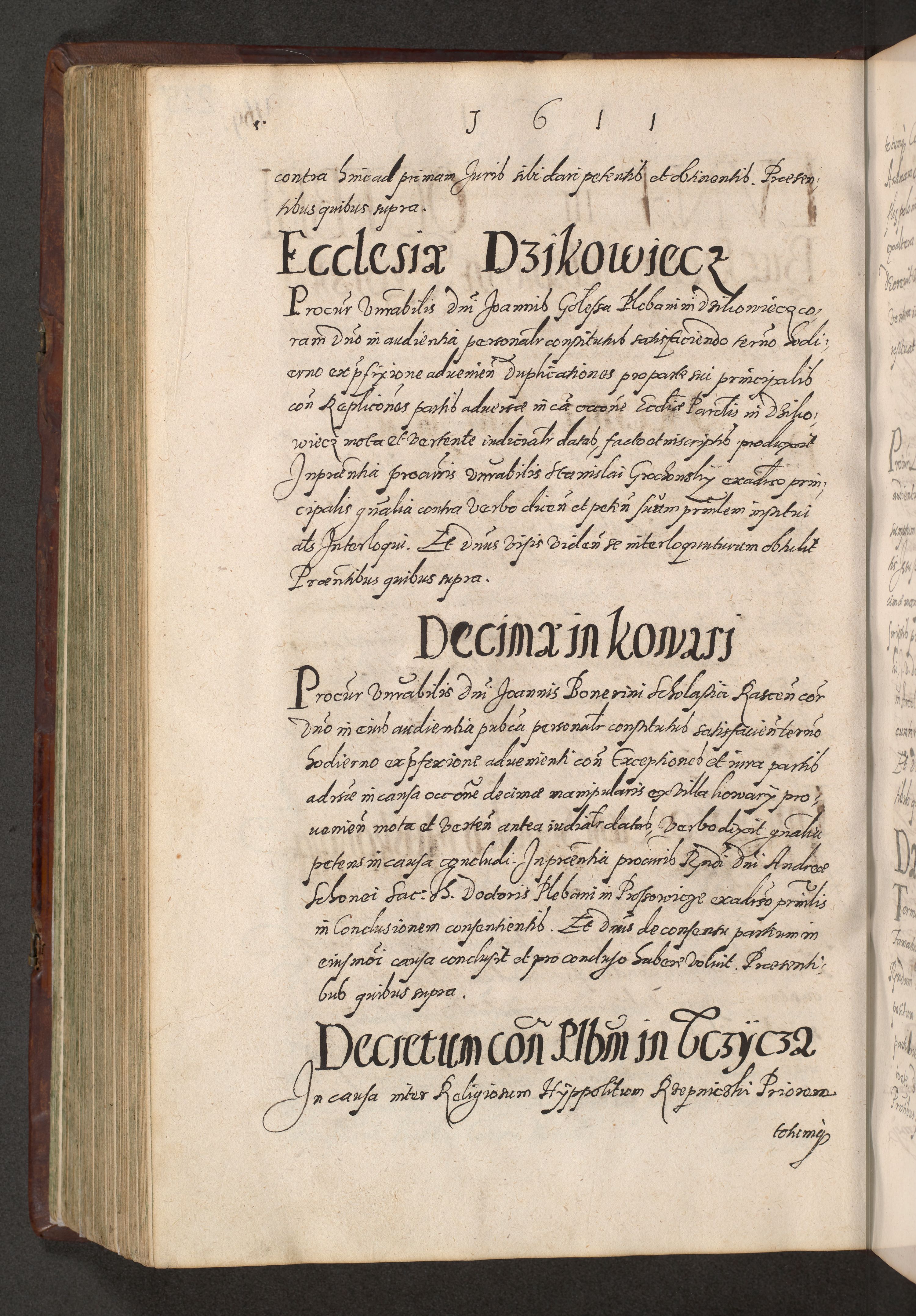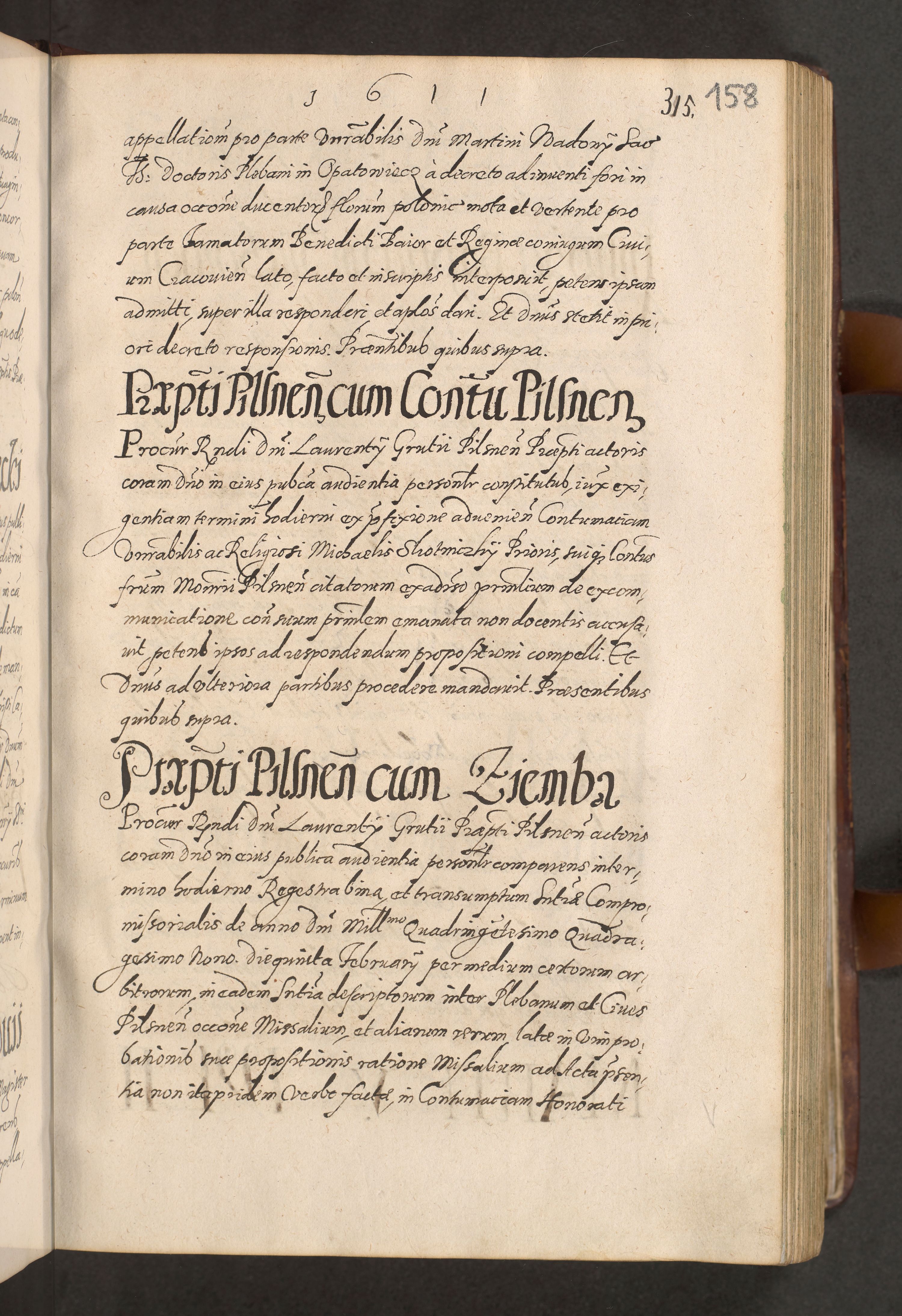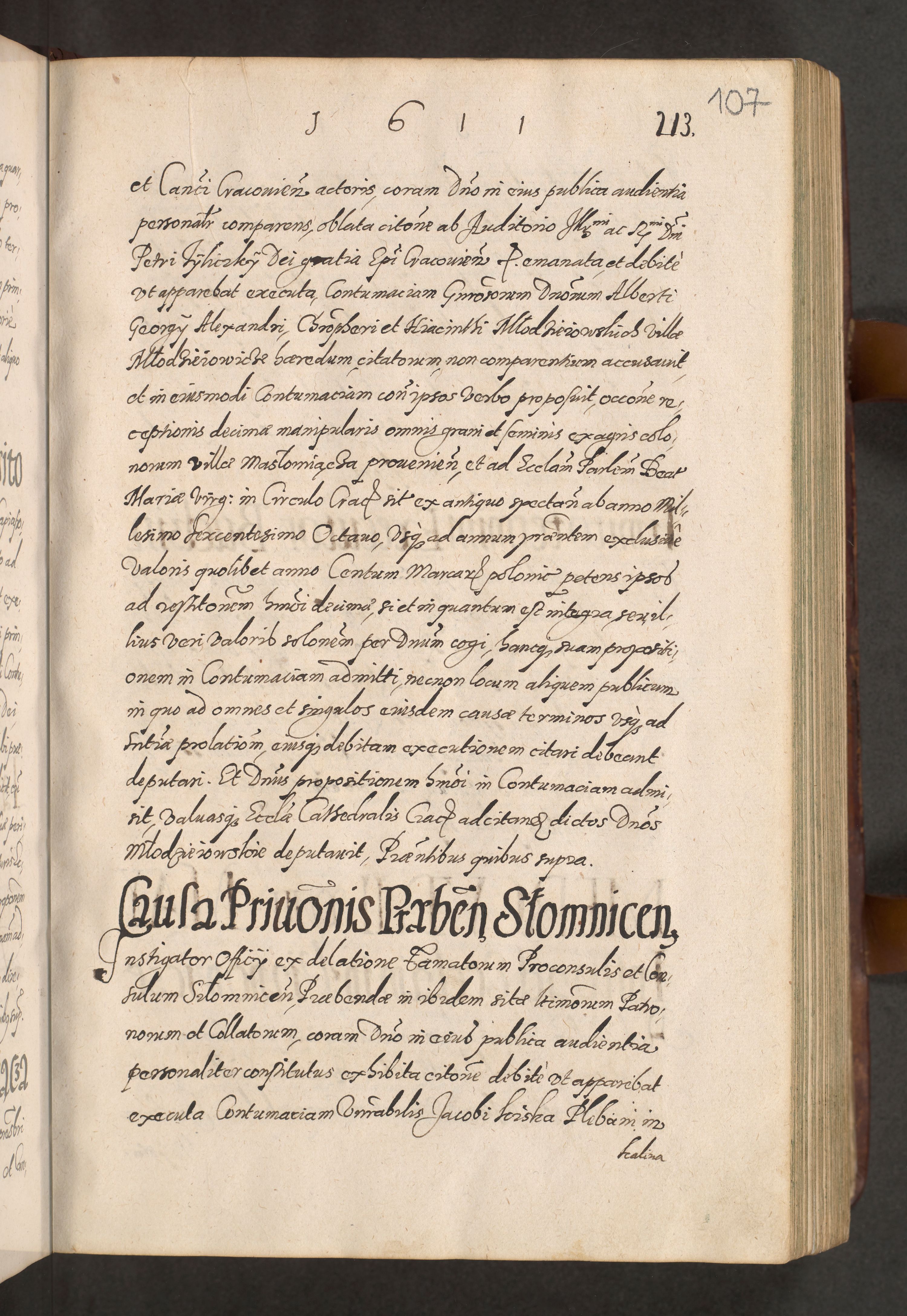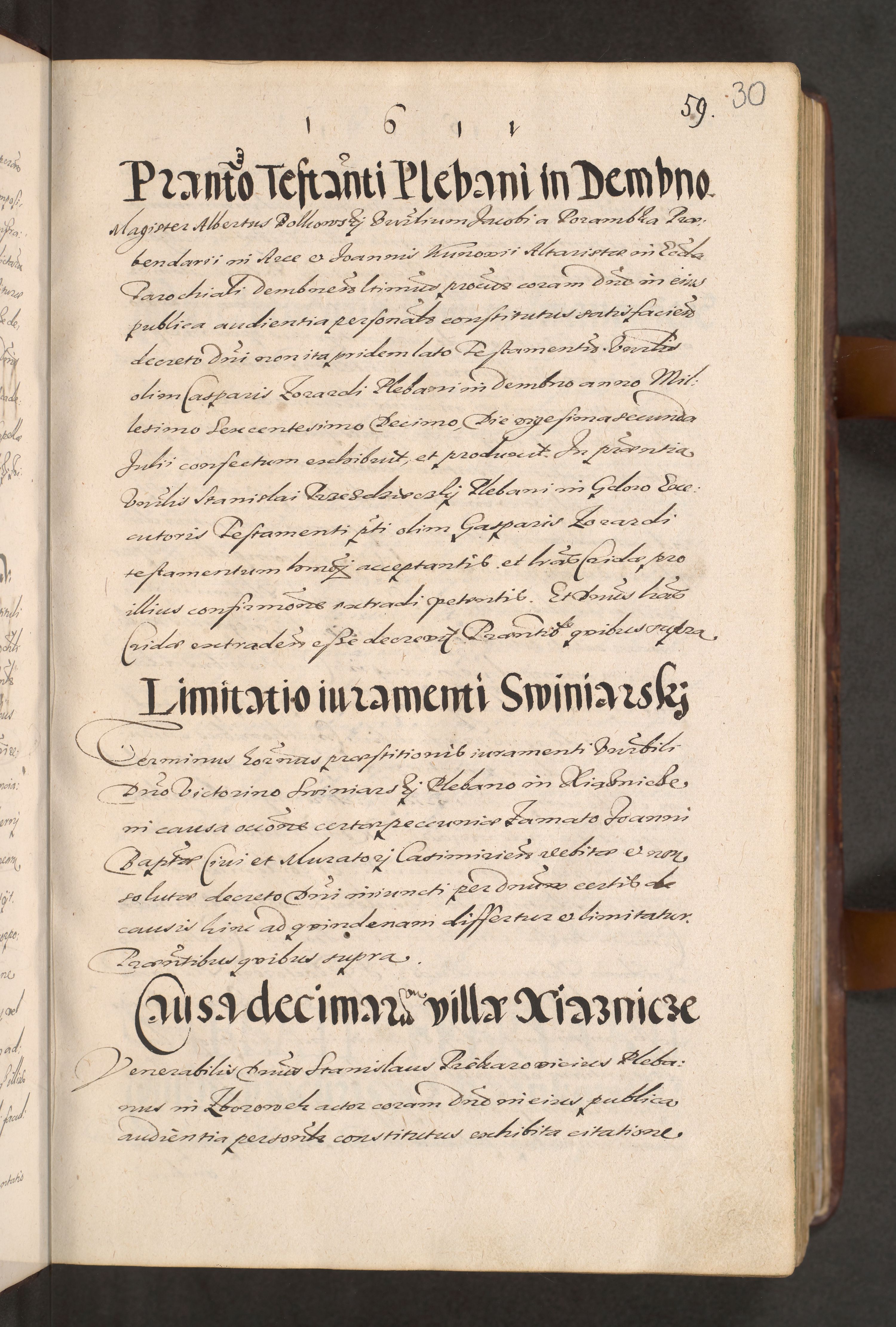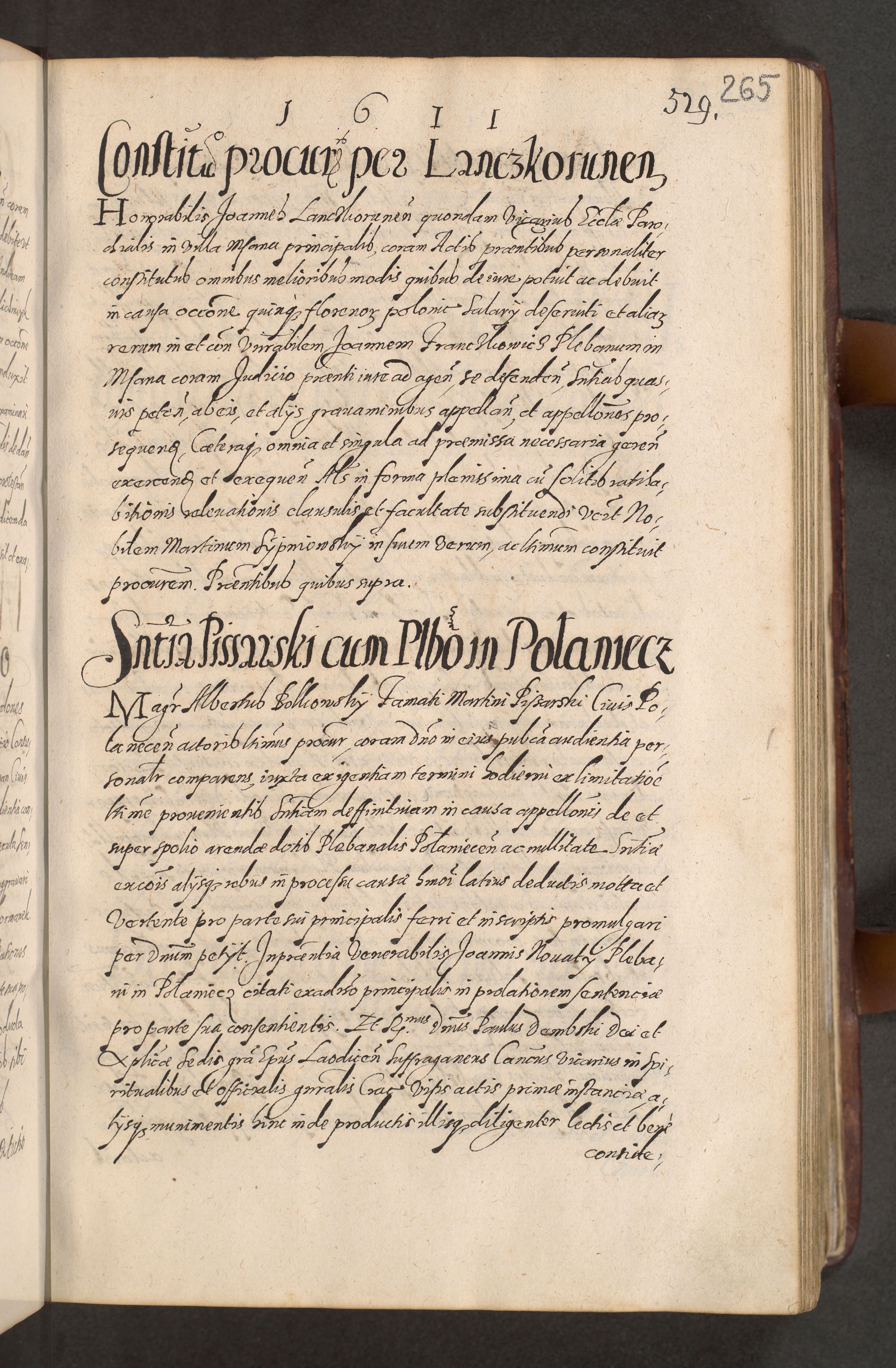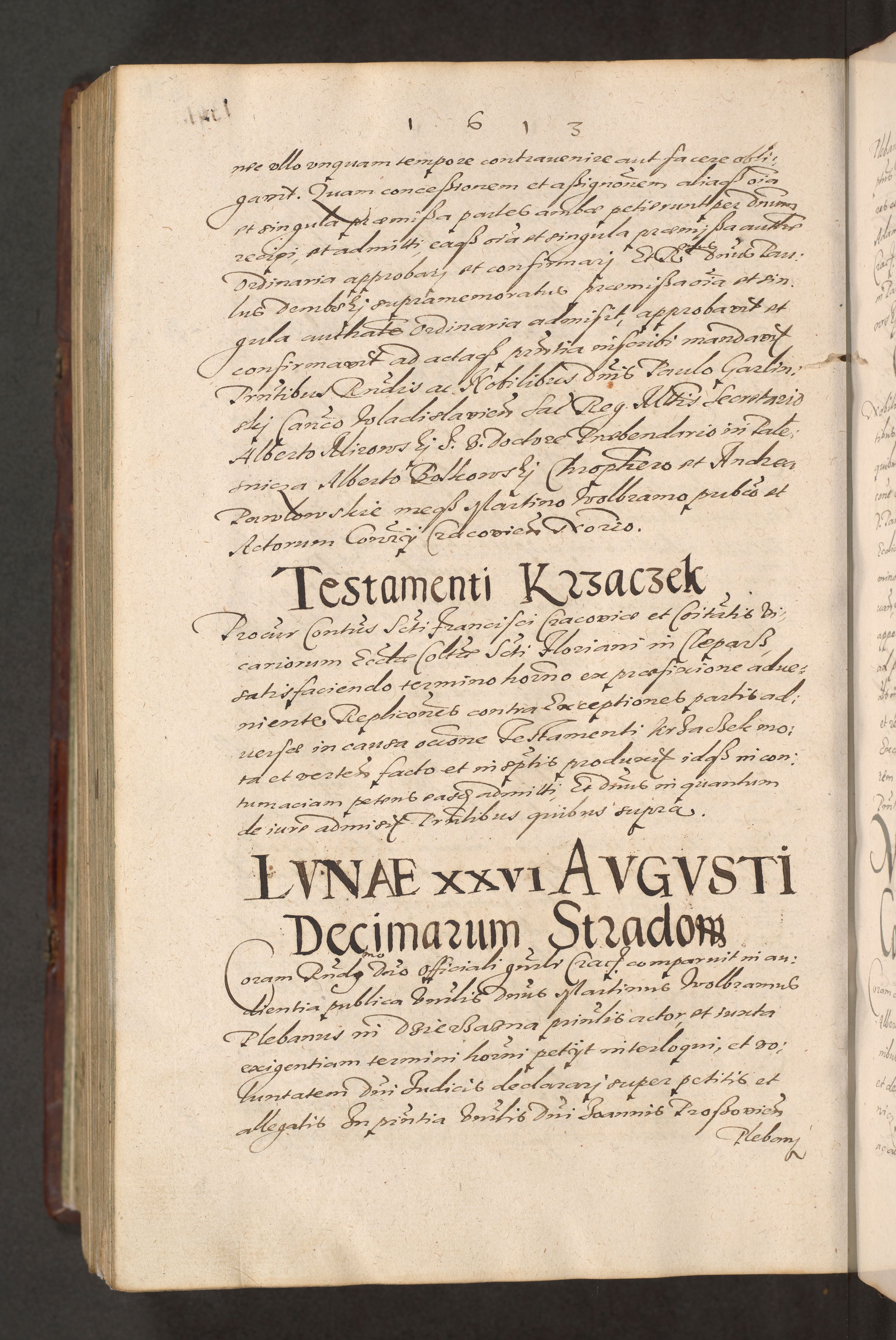 Acta actorum causarum sententiarum tam diffinitiuarum quam interloquutorisrum decretorum obligationum quietationum procuratorum constitutionum etc. etc. coram Reverendo Domino Paulo Dembski Dei et Apostolice Sedis Gratia Episcopalo Dicensis Suffraganeo Canonico Vicario in Spiritualibus et Officiali Generali Cracoviensis ad Annum Domini Millesimum Sexcentesimum Undecimum cuius indictio octava pontificatus Sanctissimi Domini Nostri Domini Pauli Divina Providentia Papae Vti foeliciter continuantur