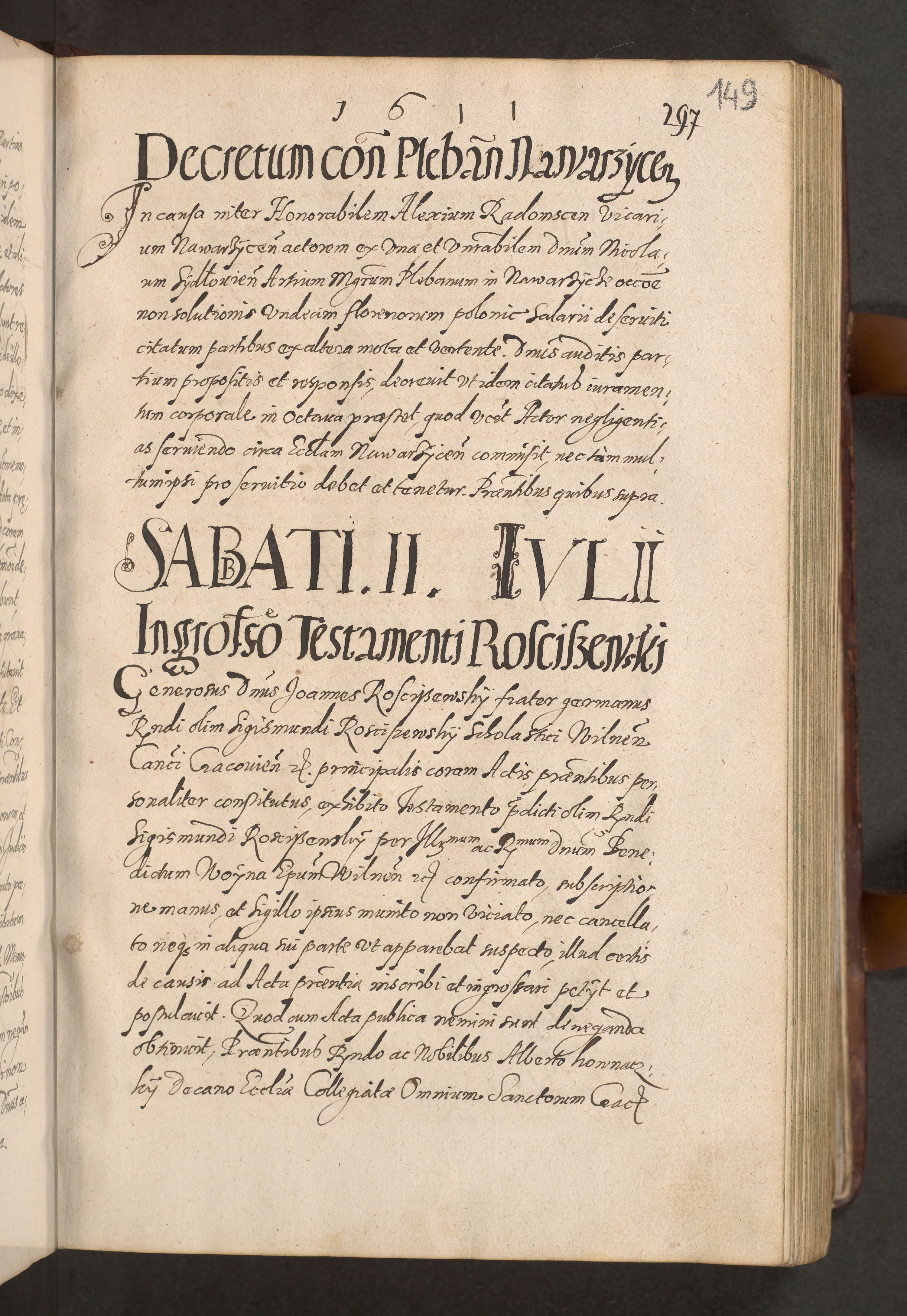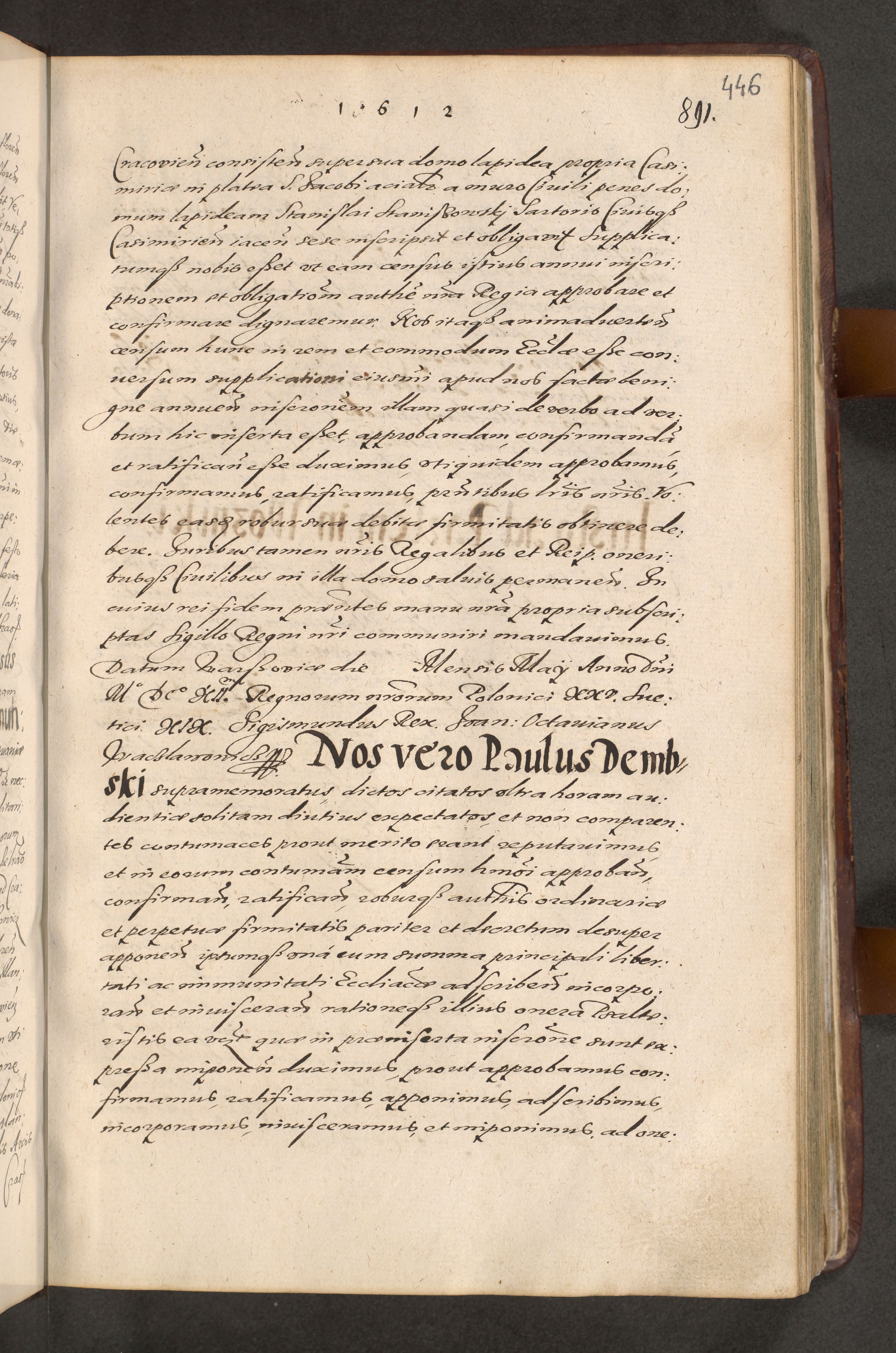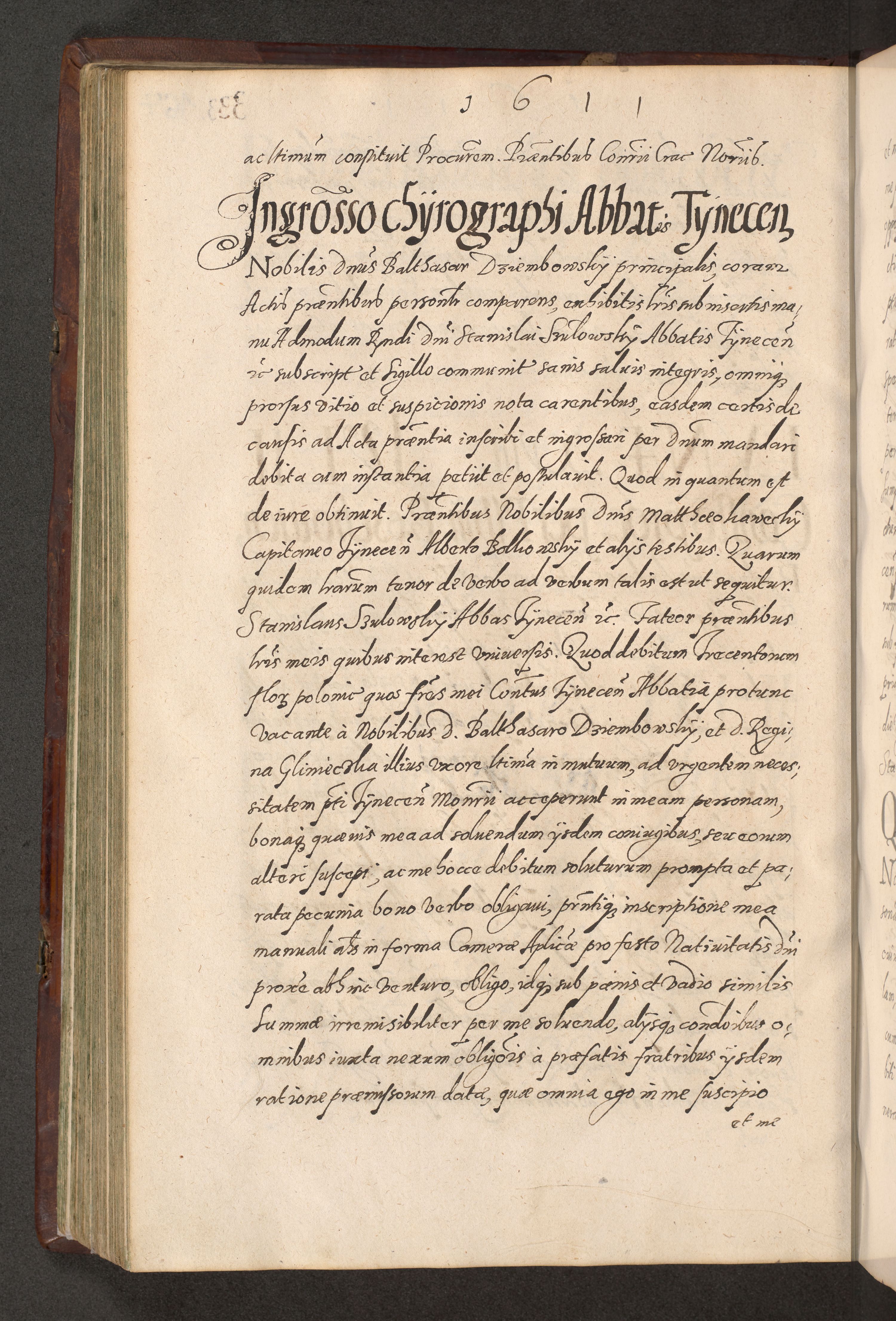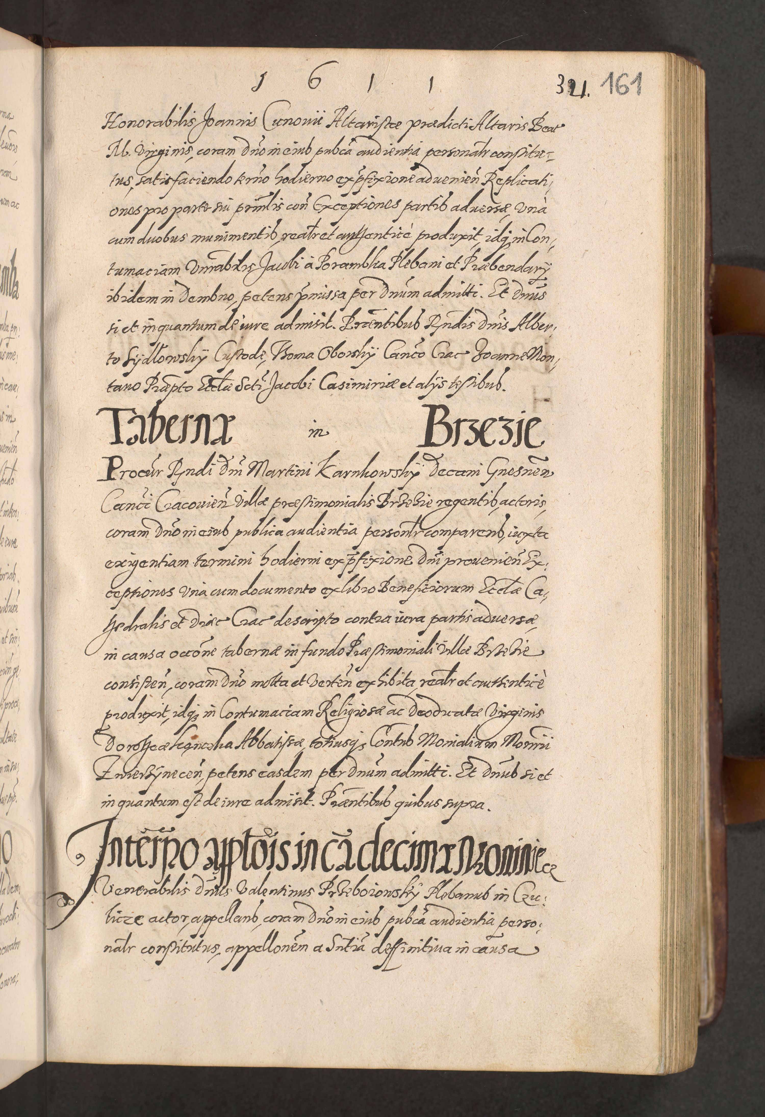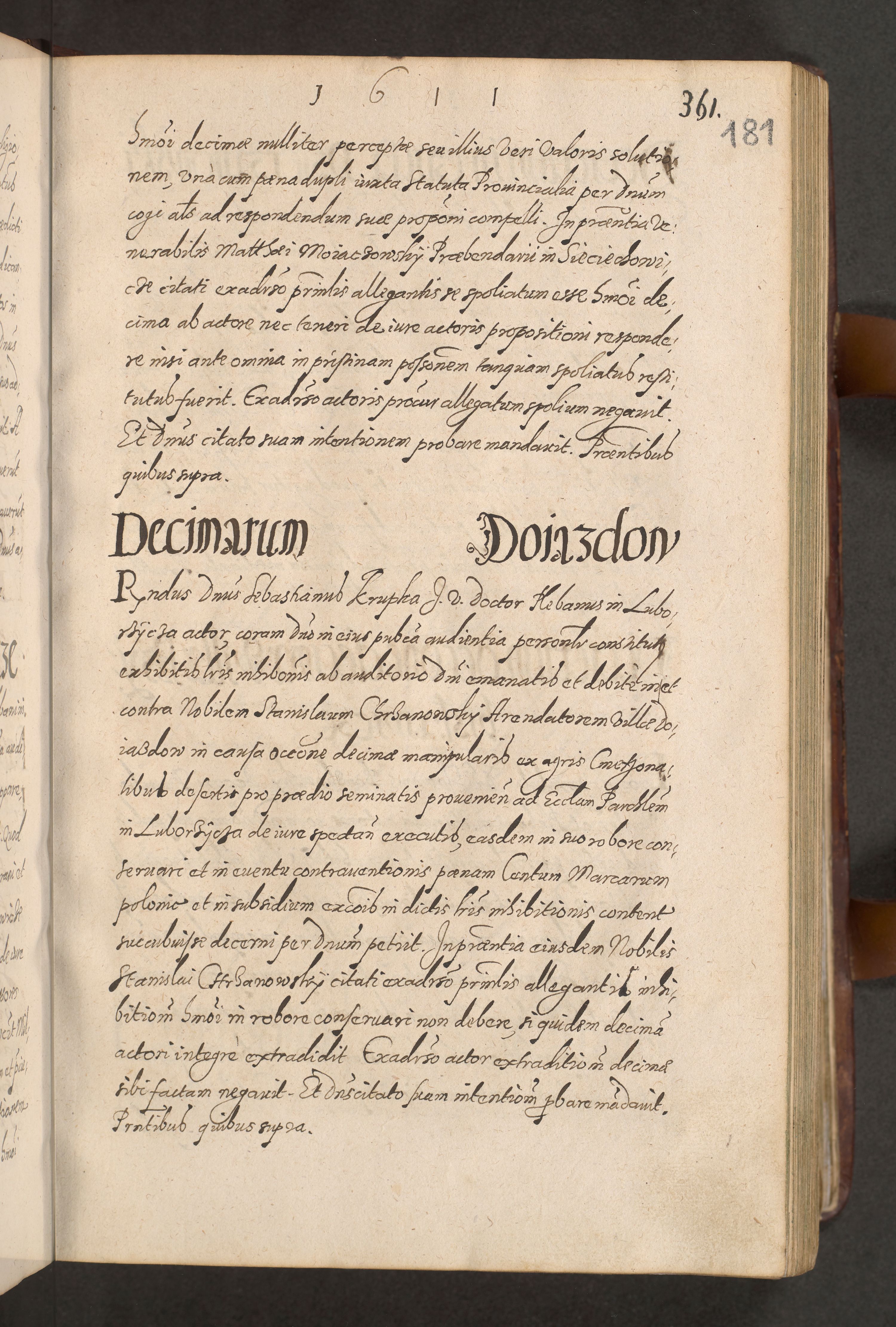 Acta actorum causarum sententiarum tam diffinitiuarum quam interloquutorisrum decretorum obligationum quietationum procuratorum constitutionum etc. etc. coram Reverendo Domino Paulo Dembski Dei et Apostolice Sedis Gratia Episcopalo Dicensis Suffraganeo Canonico Vicario in Spiritualibus et Officiali Generali Cracoviensis ad Annum Domini Millesimum Sexcentesimum Undecimum cuius indictio octava pontificatus Sanctissimi Domini Nostri Domini Pauli Divina Providentia Papae Vti foeliciter continuantur