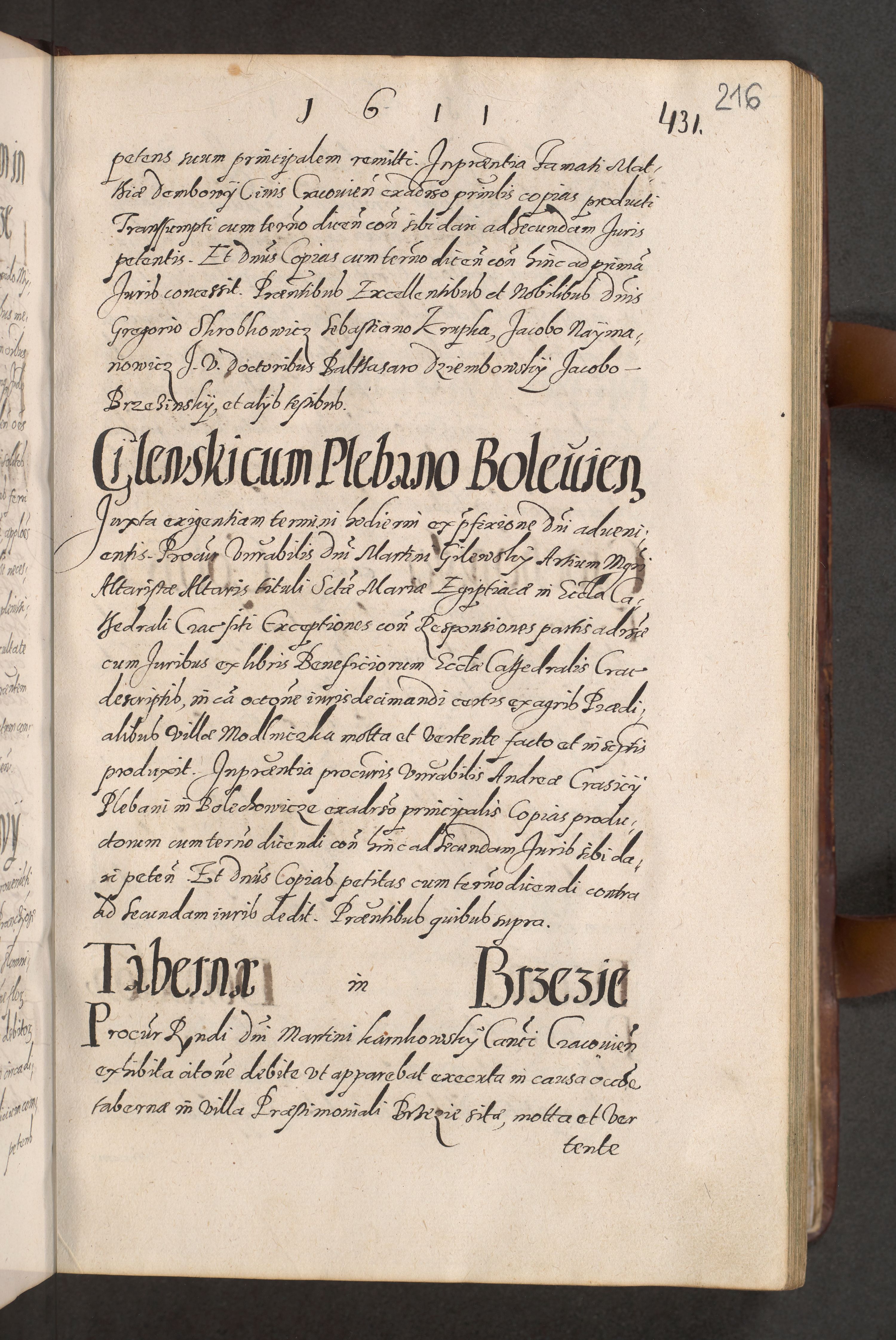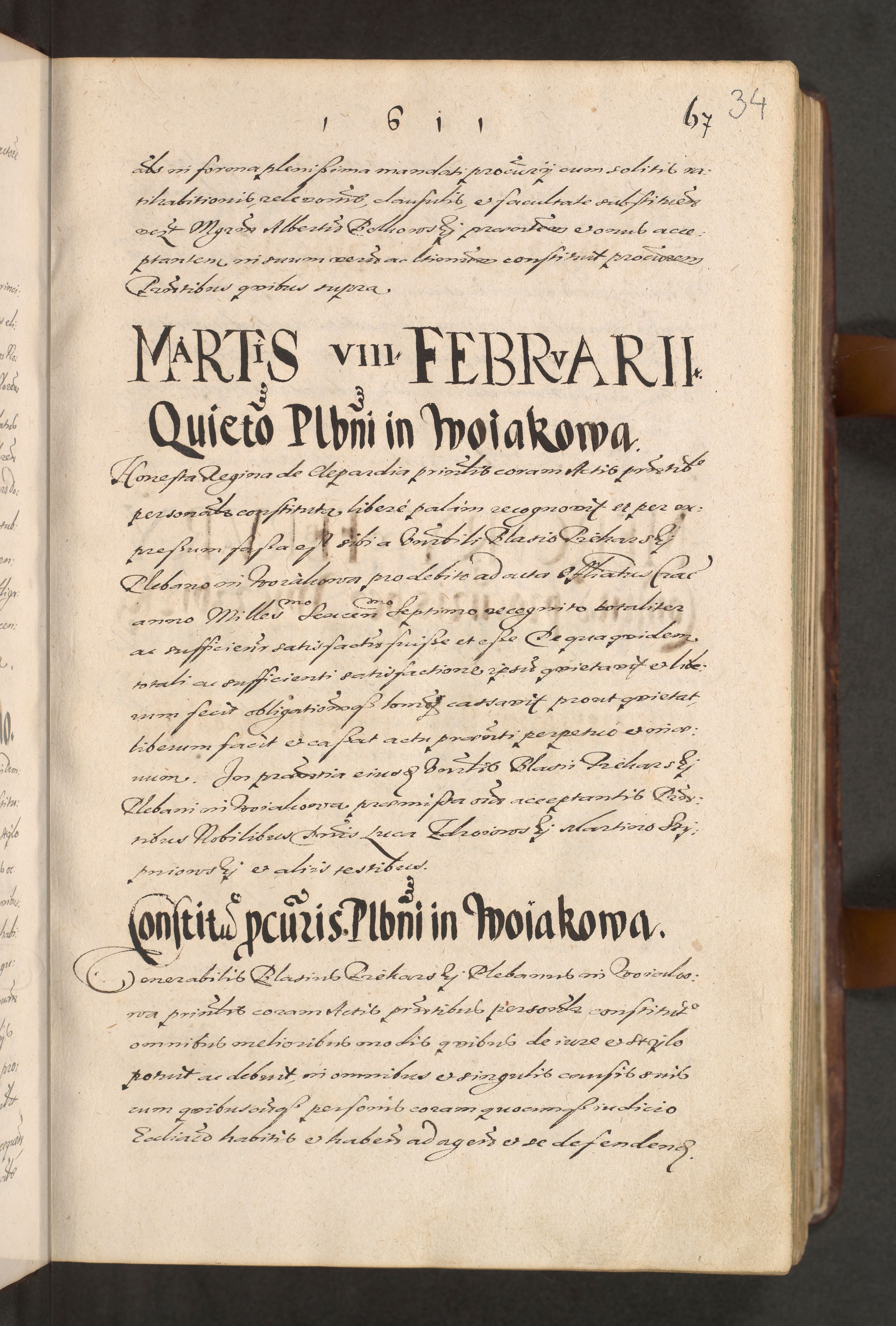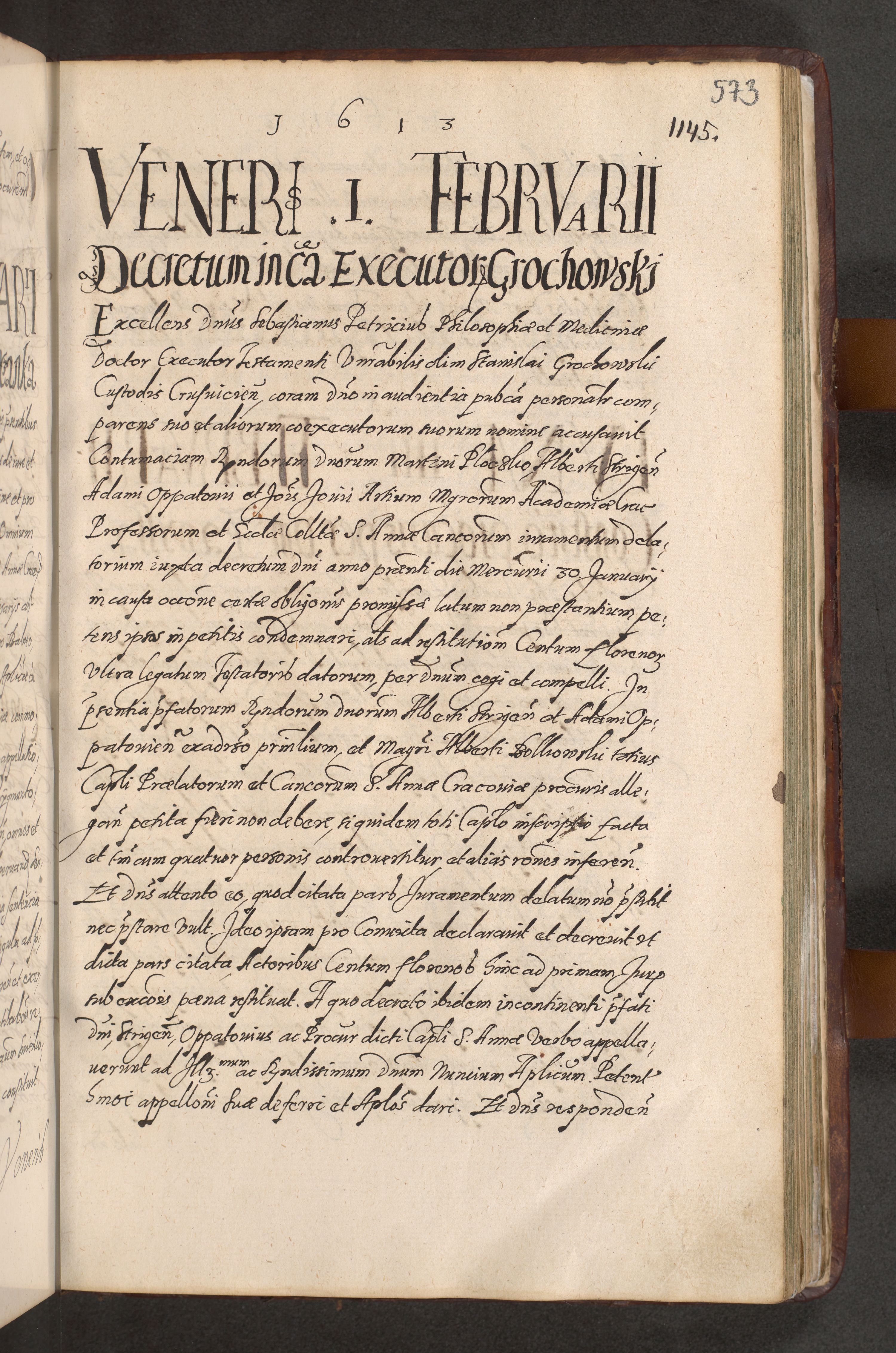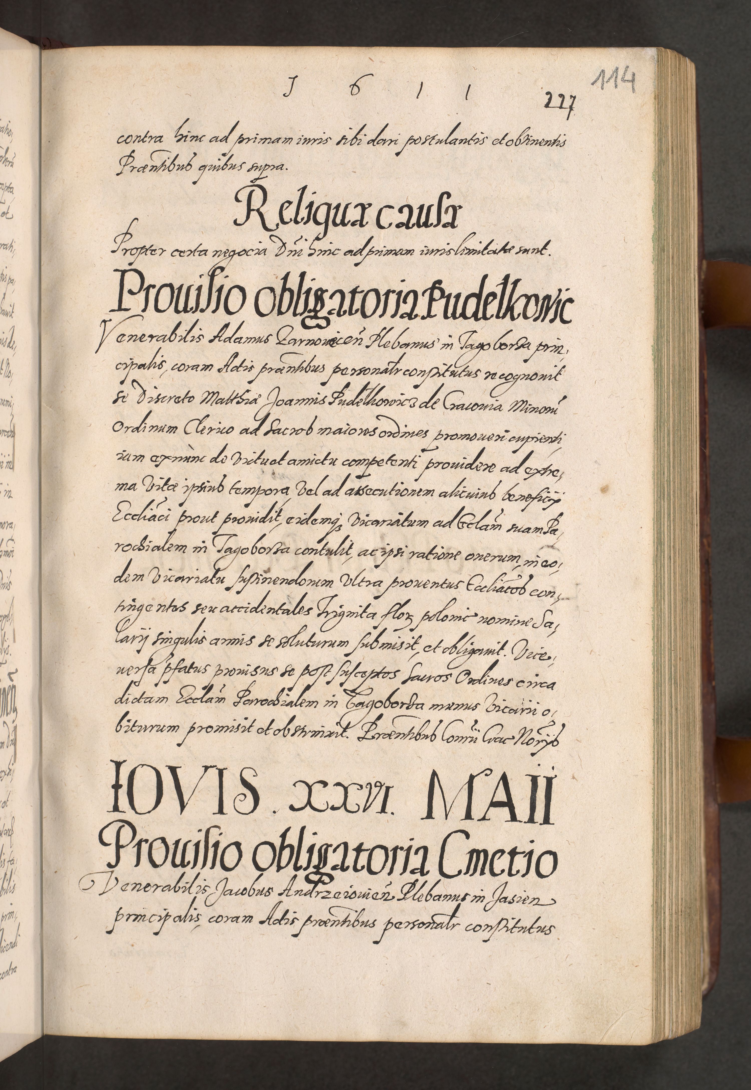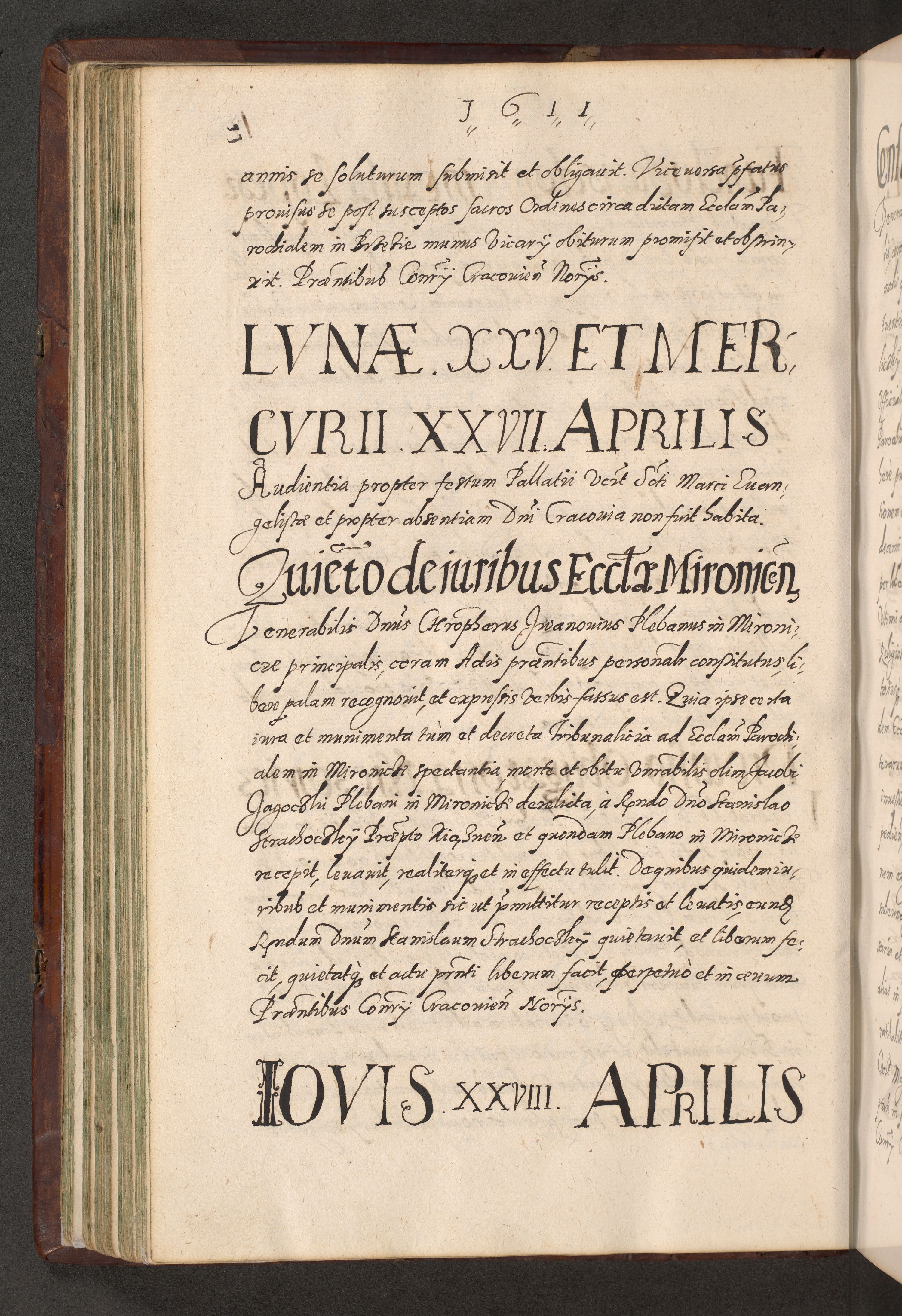 Acta actorum causarum sententiarum tam diffinitiuarum quam interloquutorisrum decretorum obligationum quietationum procuratorum constitutionum etc. etc. coram Reverendo Domino Paulo Dembski Dei et Apostolice Sedis Gratia Episcopalo Dicensis Suffraganeo Canonico Vicario in Spiritualibus et Officiali Generali Cracoviensis ad Annum Domini Millesimum Sexcentesimum Undecimum cuius indictio octava pontificatus Sanctissimi Domini Nostri Domini Pauli Divina Providentia Papae Vti foeliciter continuantur