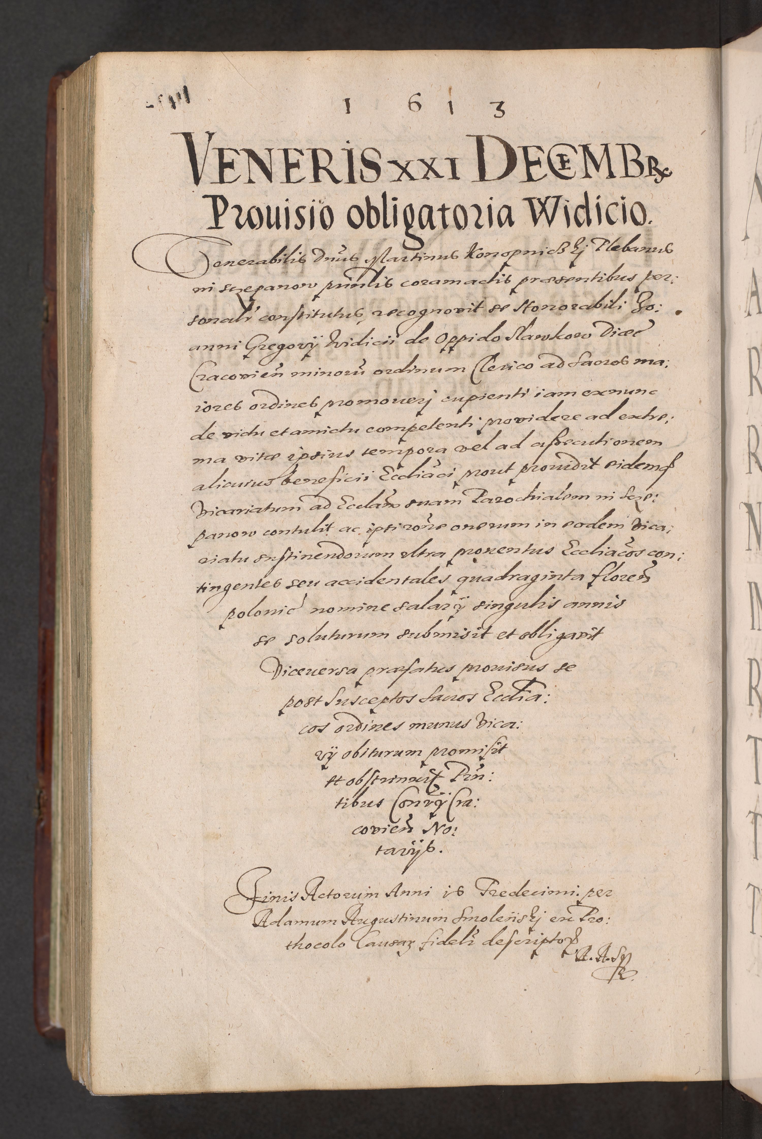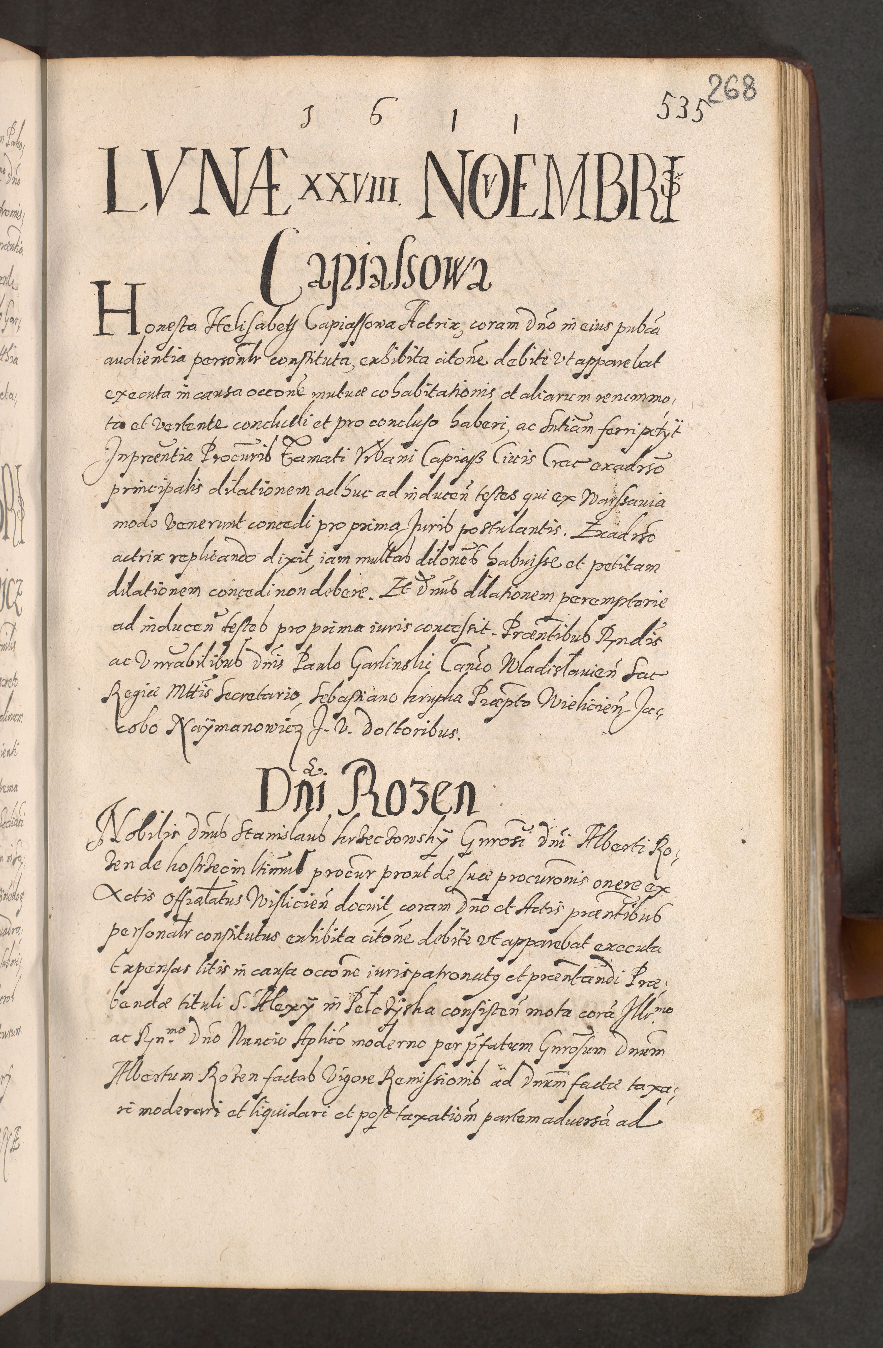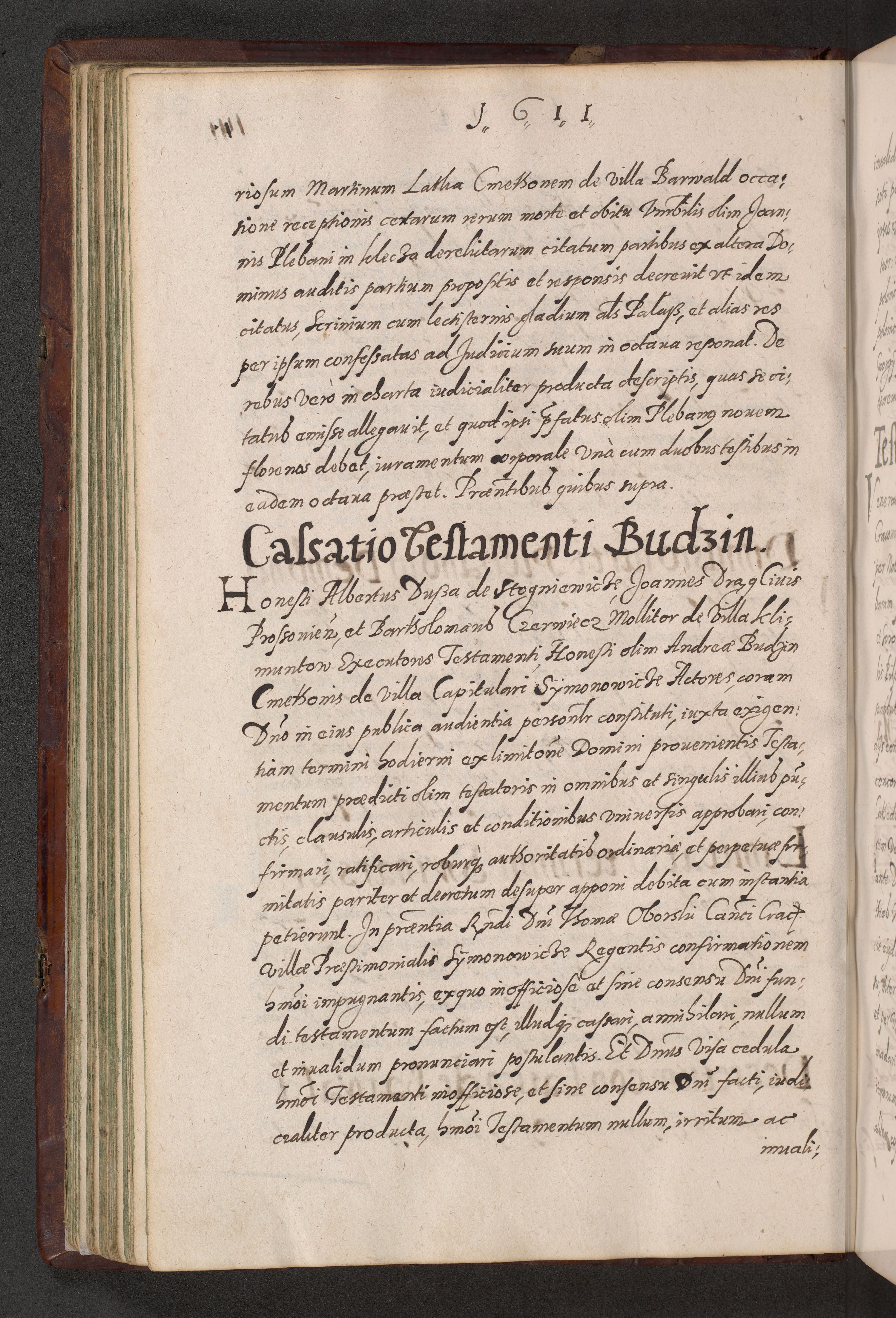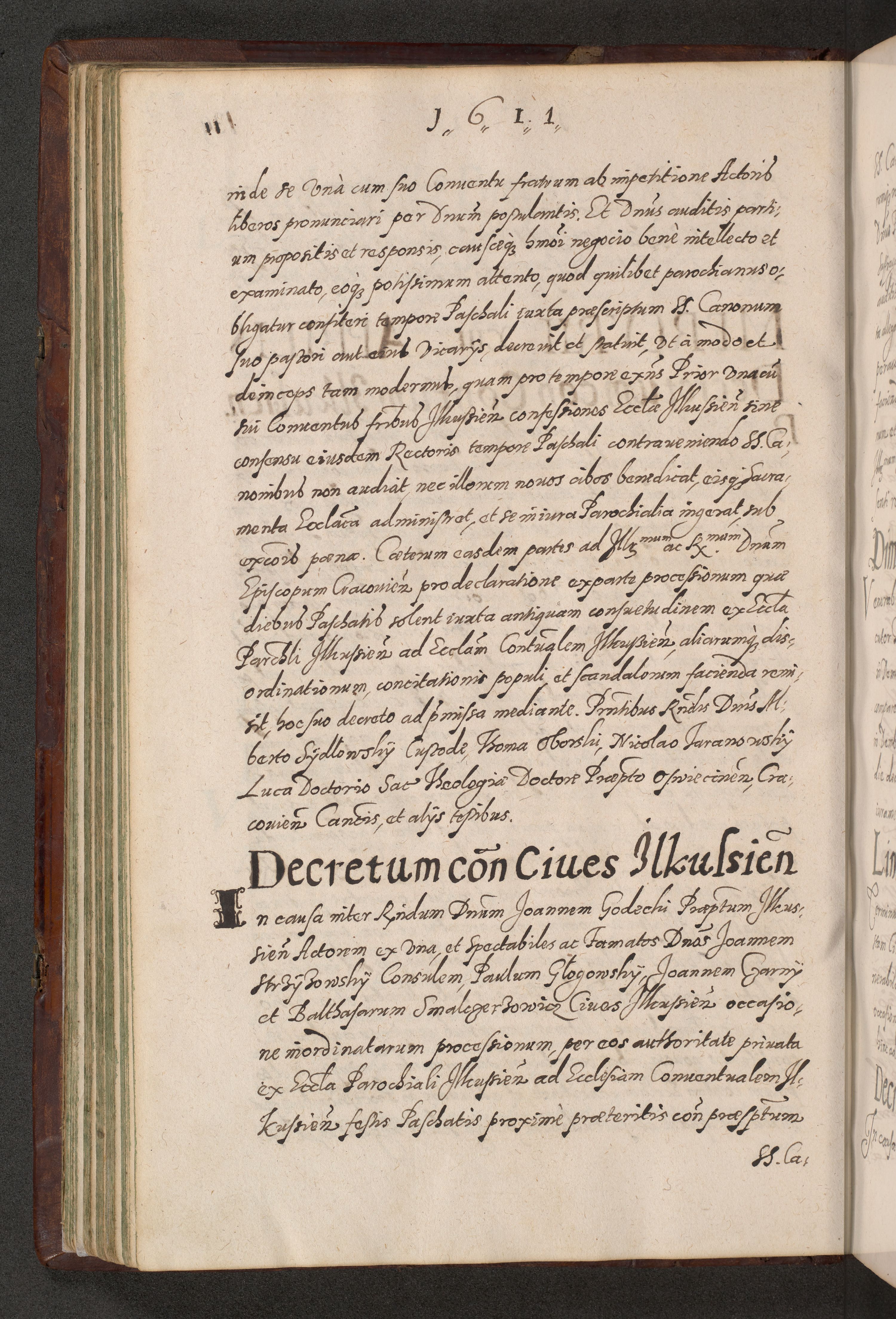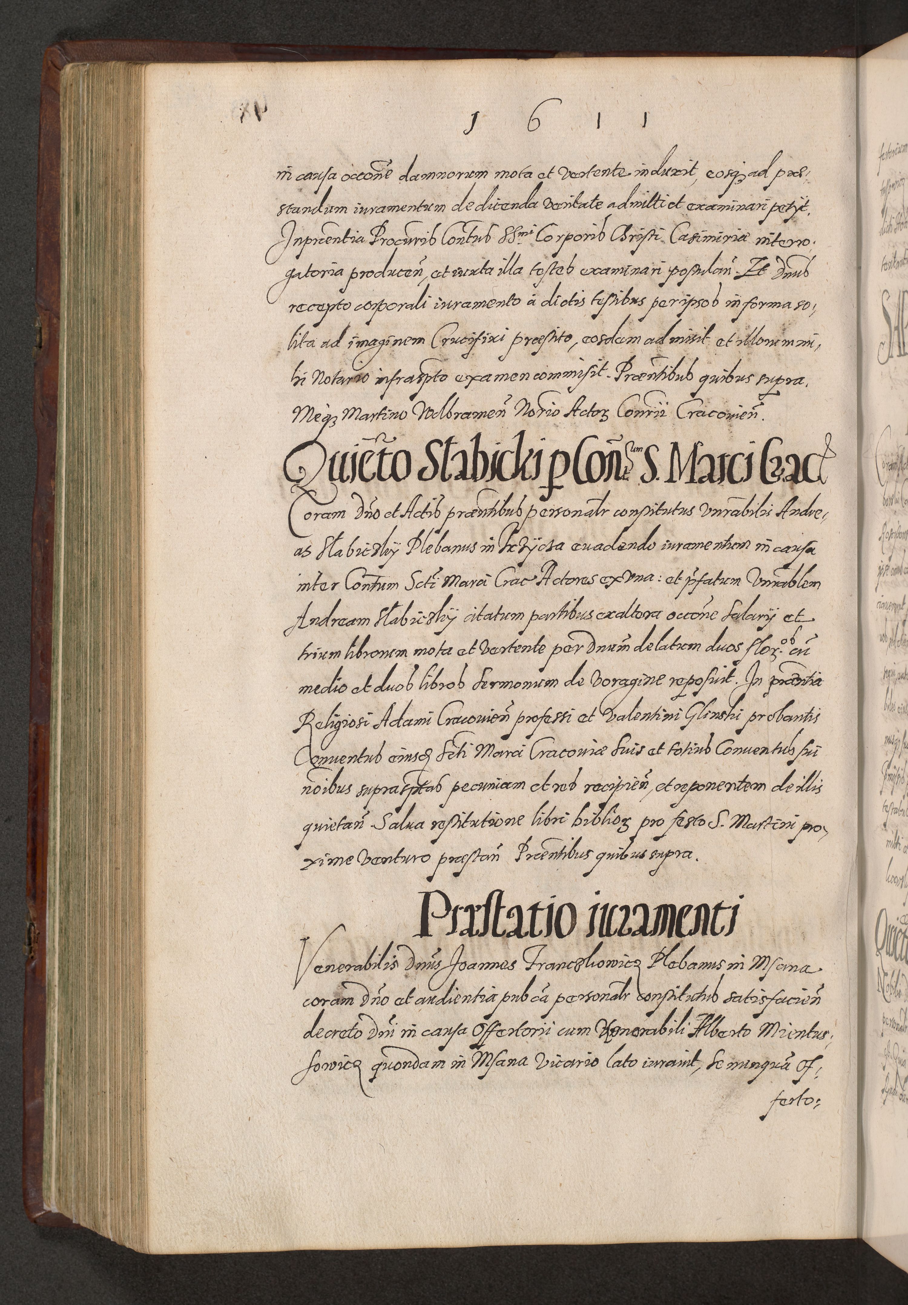 Acta actorum causarum sententiarum tam diffinitiuarum quam interloquutorisrum decretorum obligationum quietationum procuratorum constitutionum etc. etc. coram Reverendo Domino Paulo Dembski Dei et Apostolice Sedis Gratia Episcopalo Dicensis Suffraganeo Canonico Vicario in Spiritualibus et Officiali Generali Cracoviensis ad Annum Domini Millesimum Sexcentesimum Undecimum cuius indictio octava pontificatus Sanctissimi Domini Nostri Domini Pauli Divina Providentia Papae Vti foeliciter continuantur