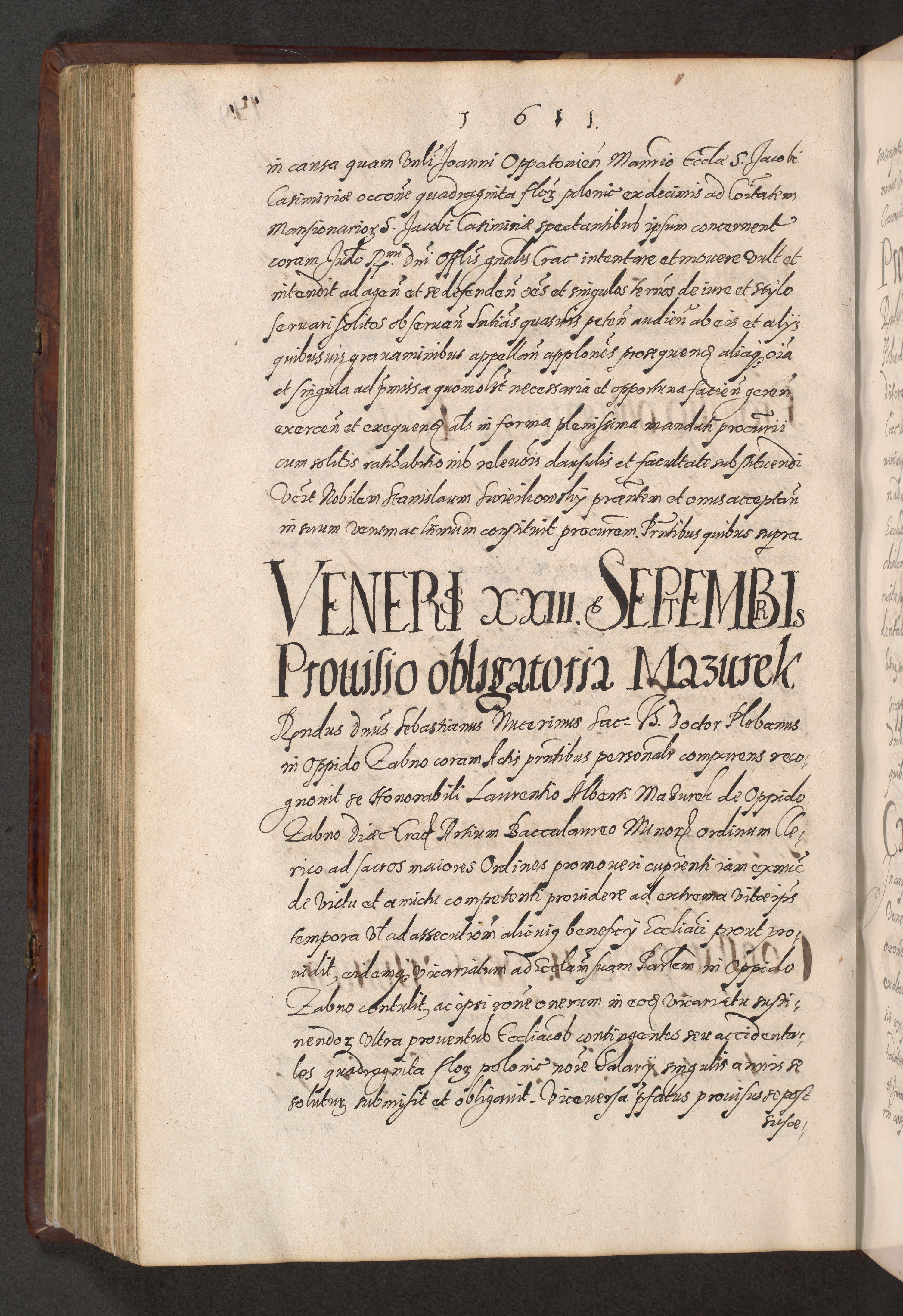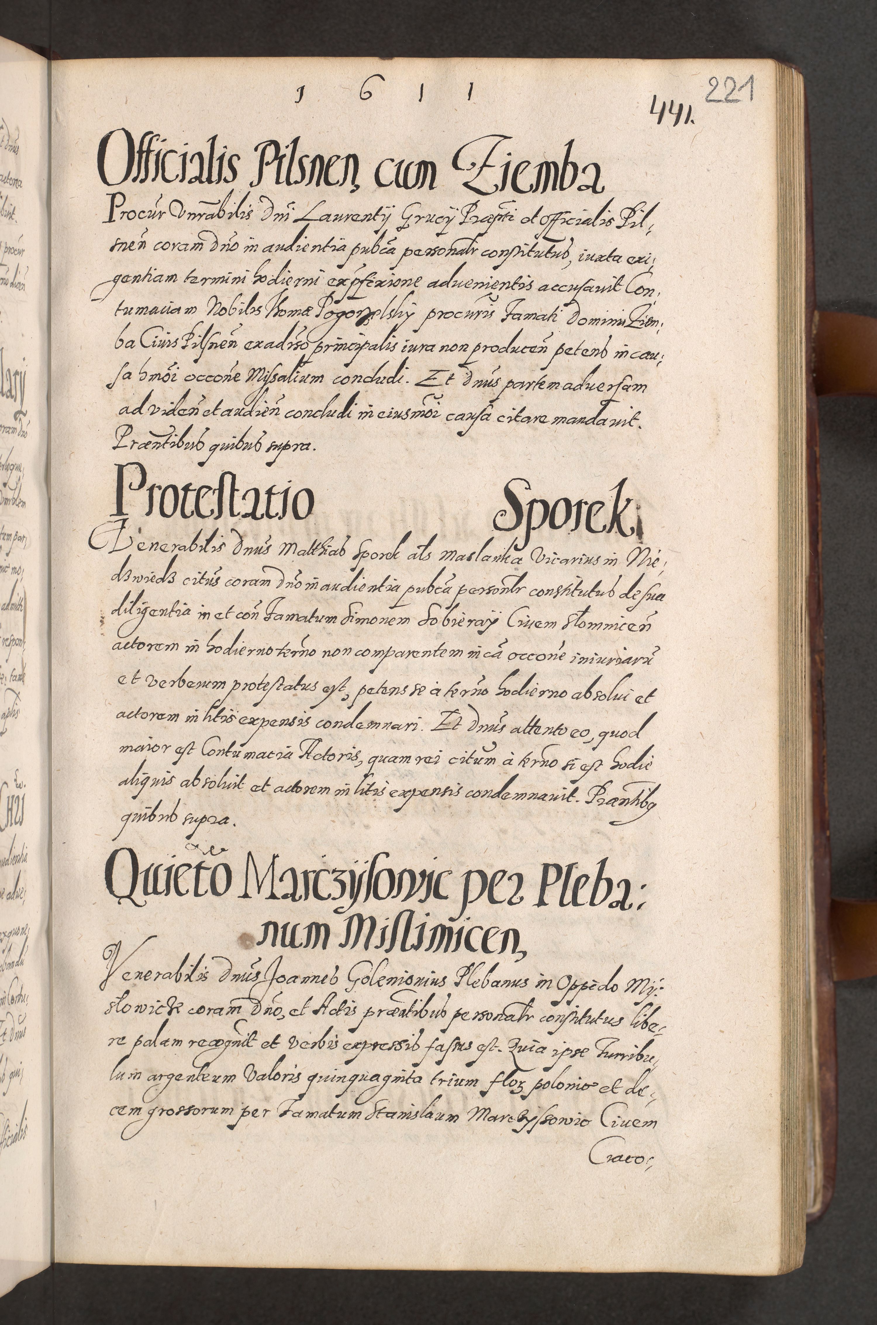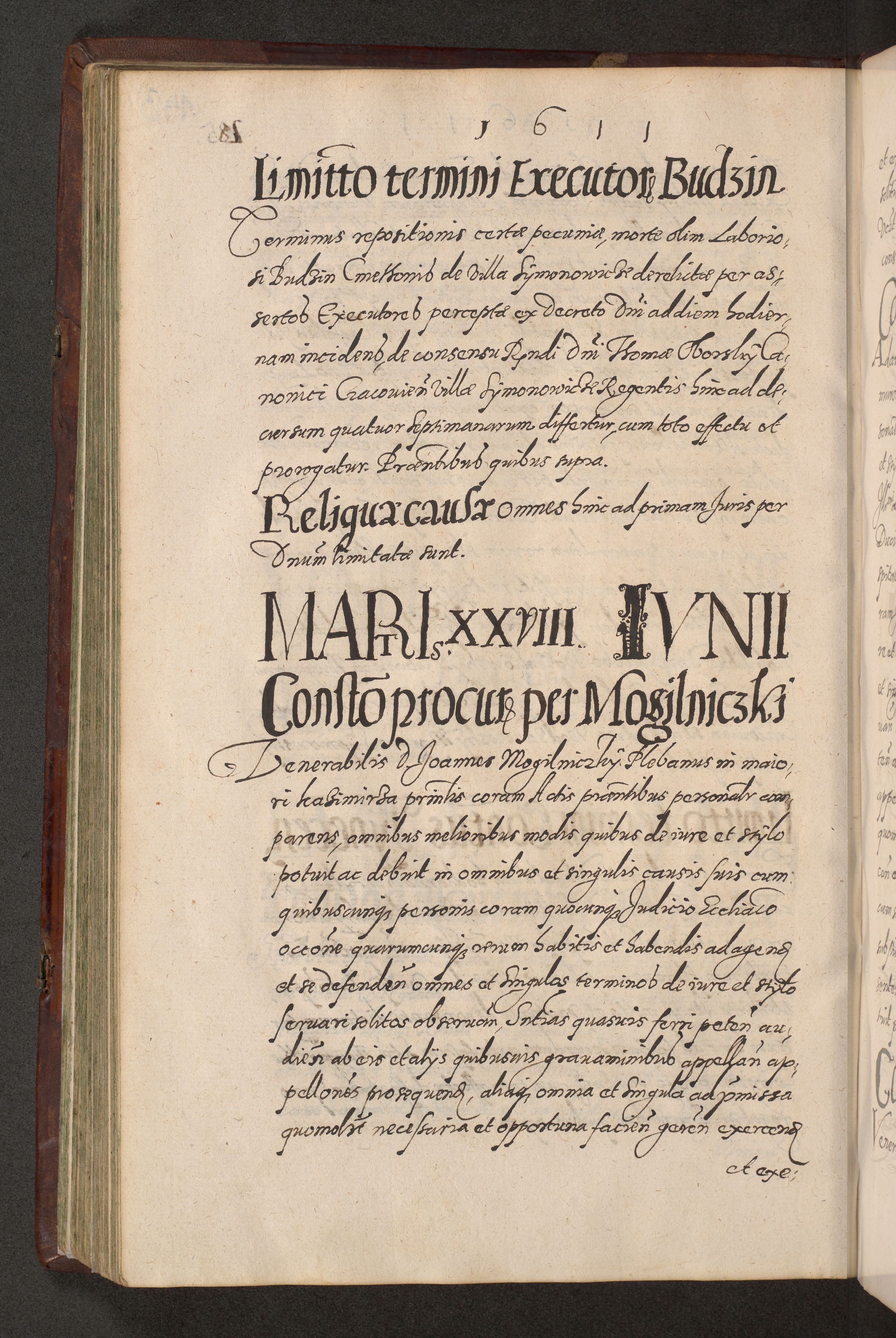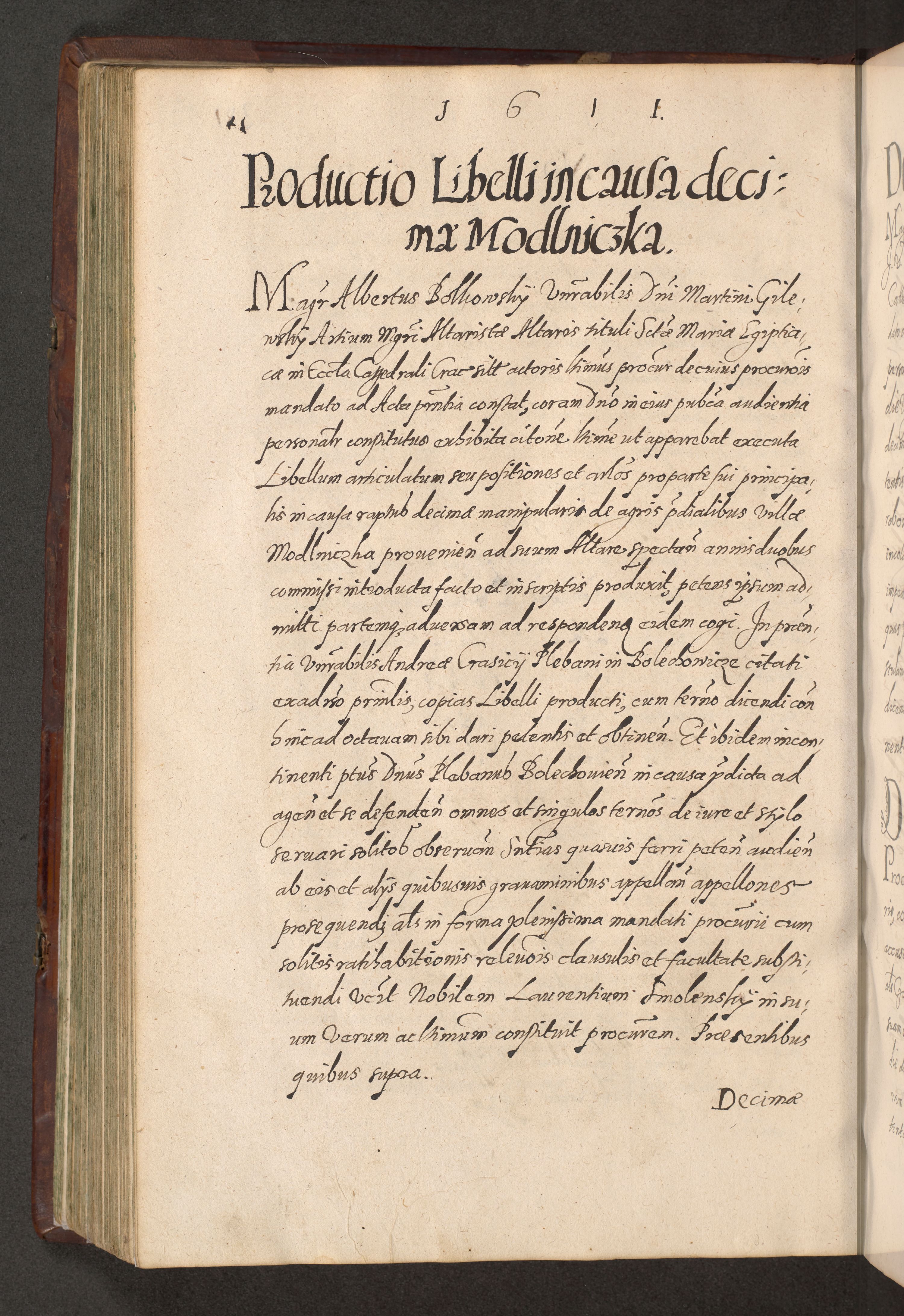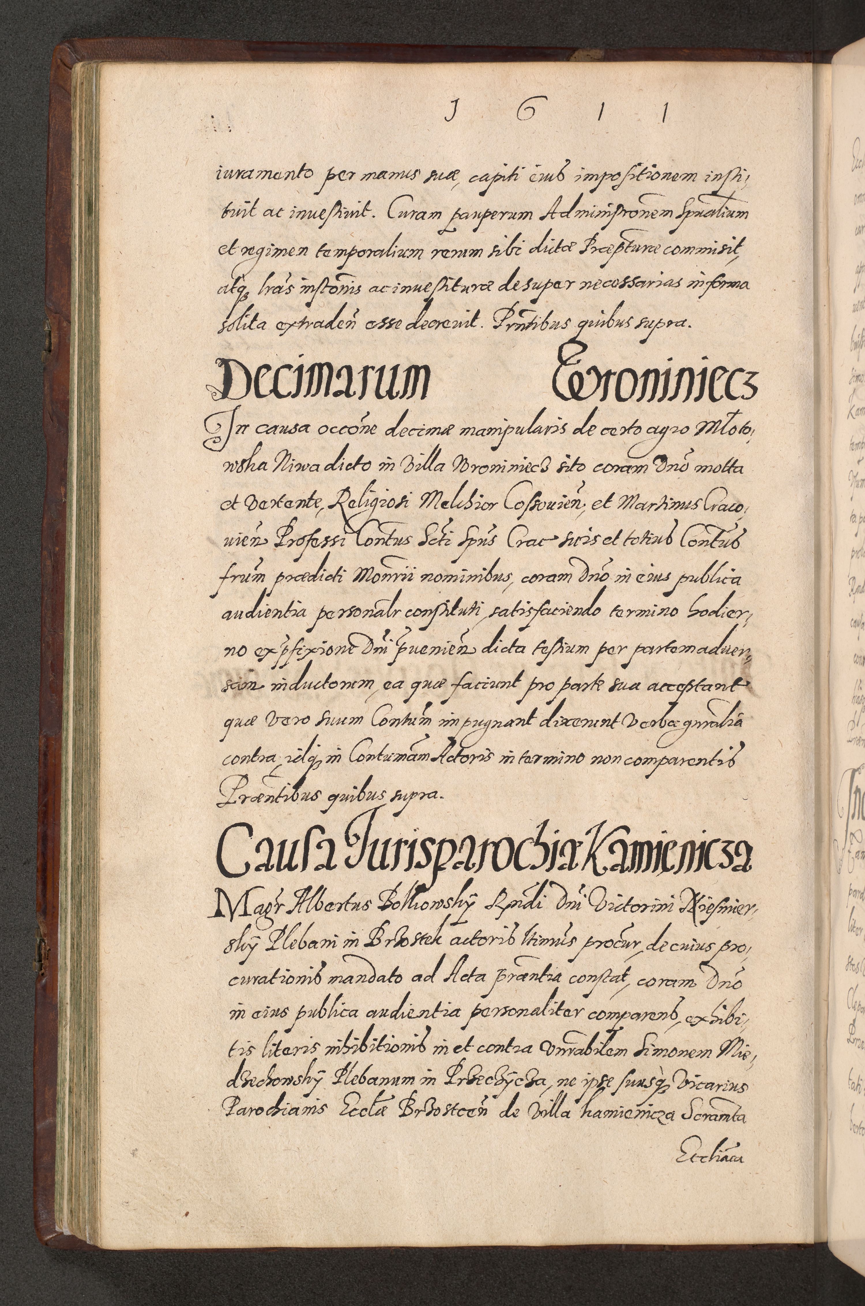 Acta actorum causarum sententiarum tam diffinitiuarum quam interloquutorisrum decretorum obligationum quietationum procuratorum constitutionum etc. etc. coram Reverendo Domino Paulo Dembski Dei et Apostolice Sedis Gratia Episcopalo Dicensis Suffraganeo Canonico Vicario in Spiritualibus et Officiali Generali Cracoviensis ad Annum Domini Millesimum Sexcentesimum Undecimum cuius indictio octava pontificatus Sanctissimi Domini Nostri Domini Pauli Divina Providentia Papae Vti foeliciter continuantur