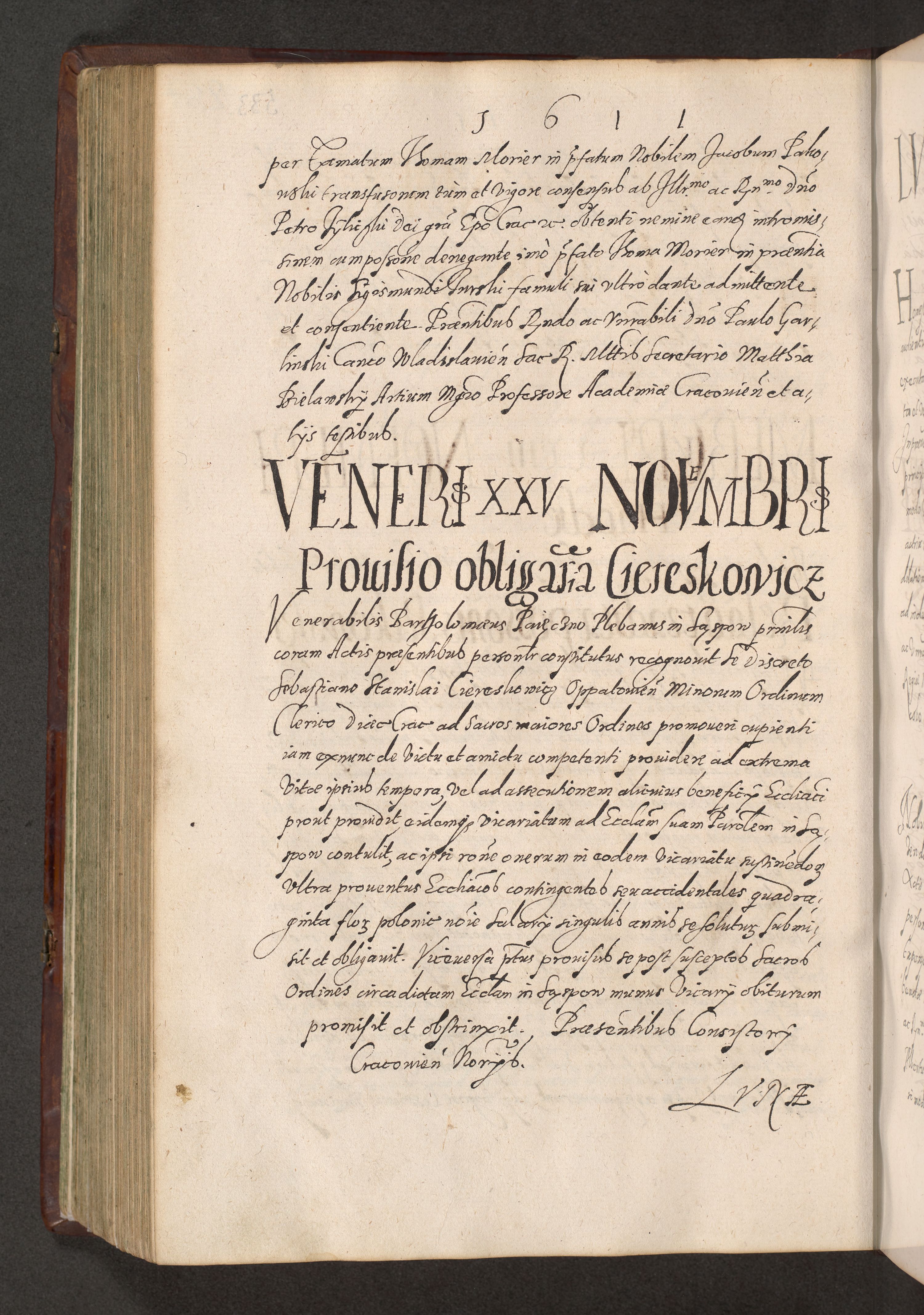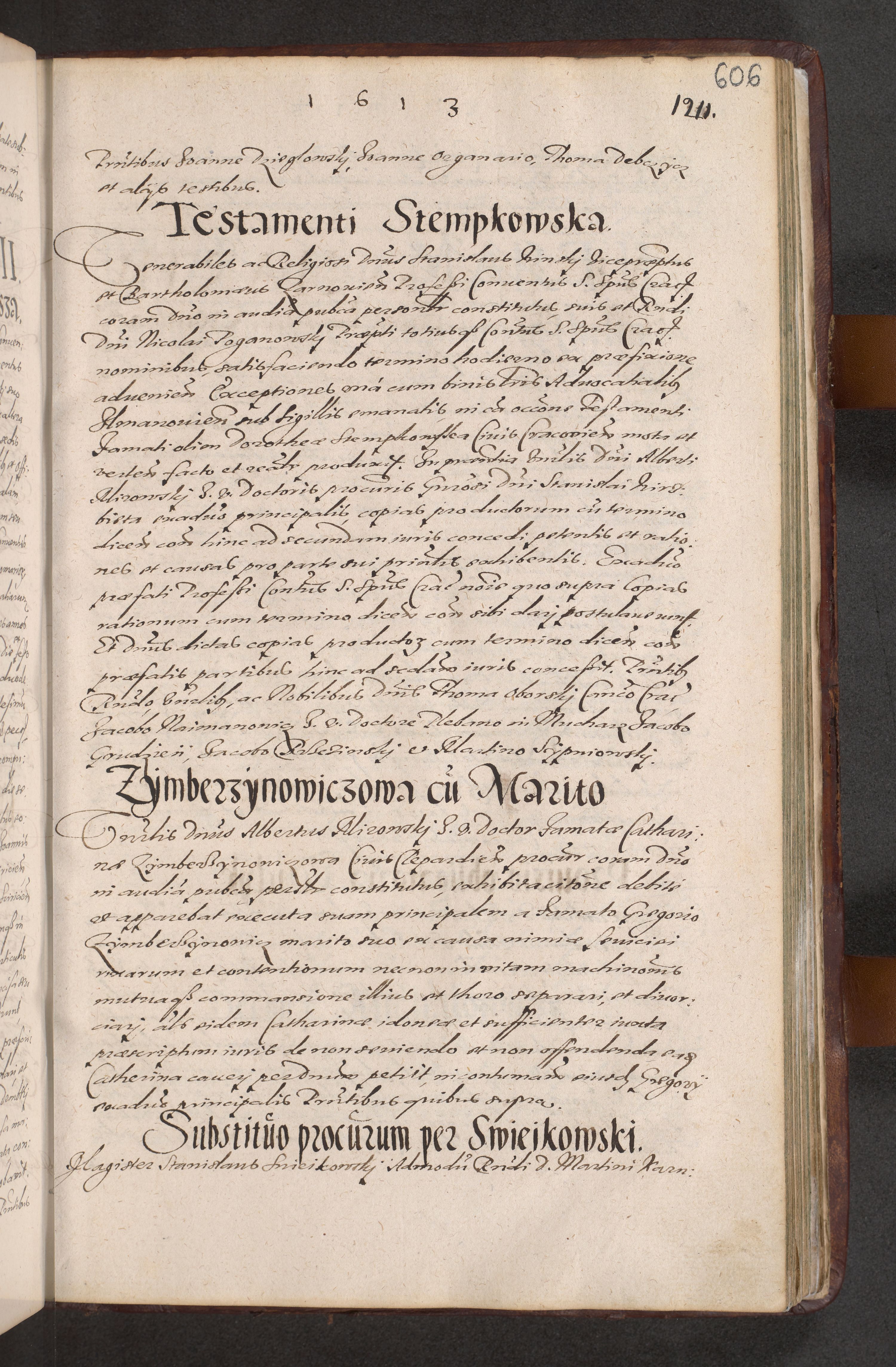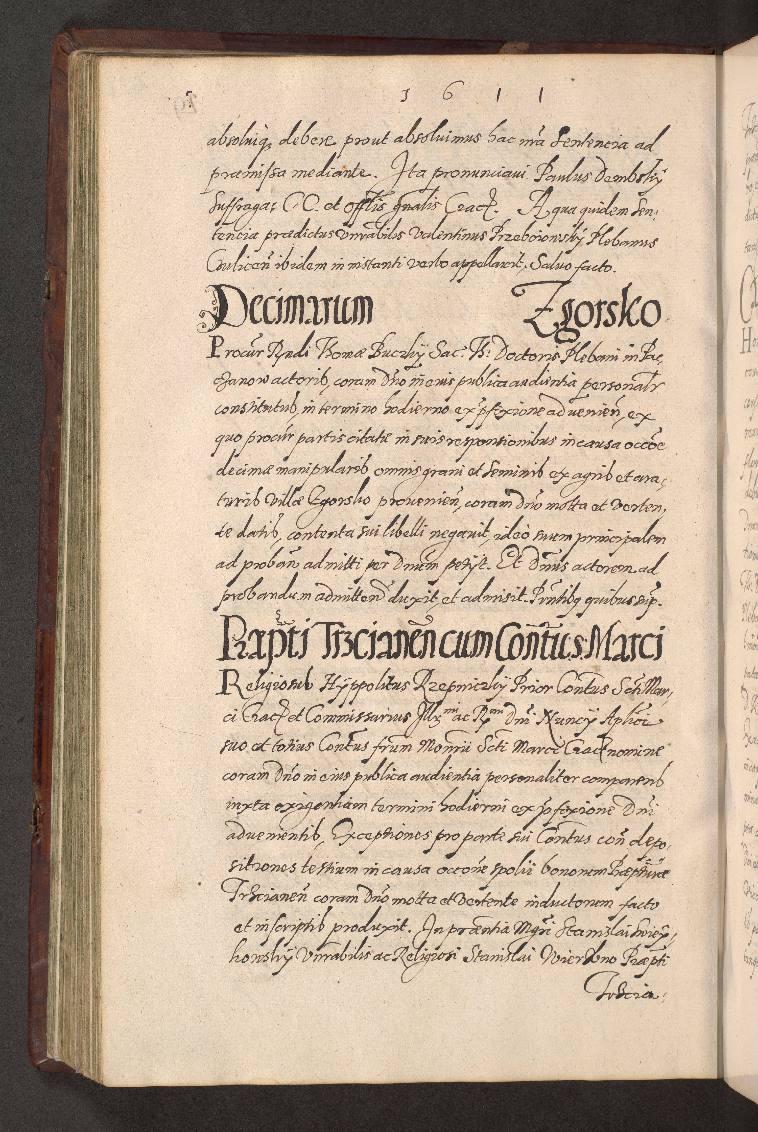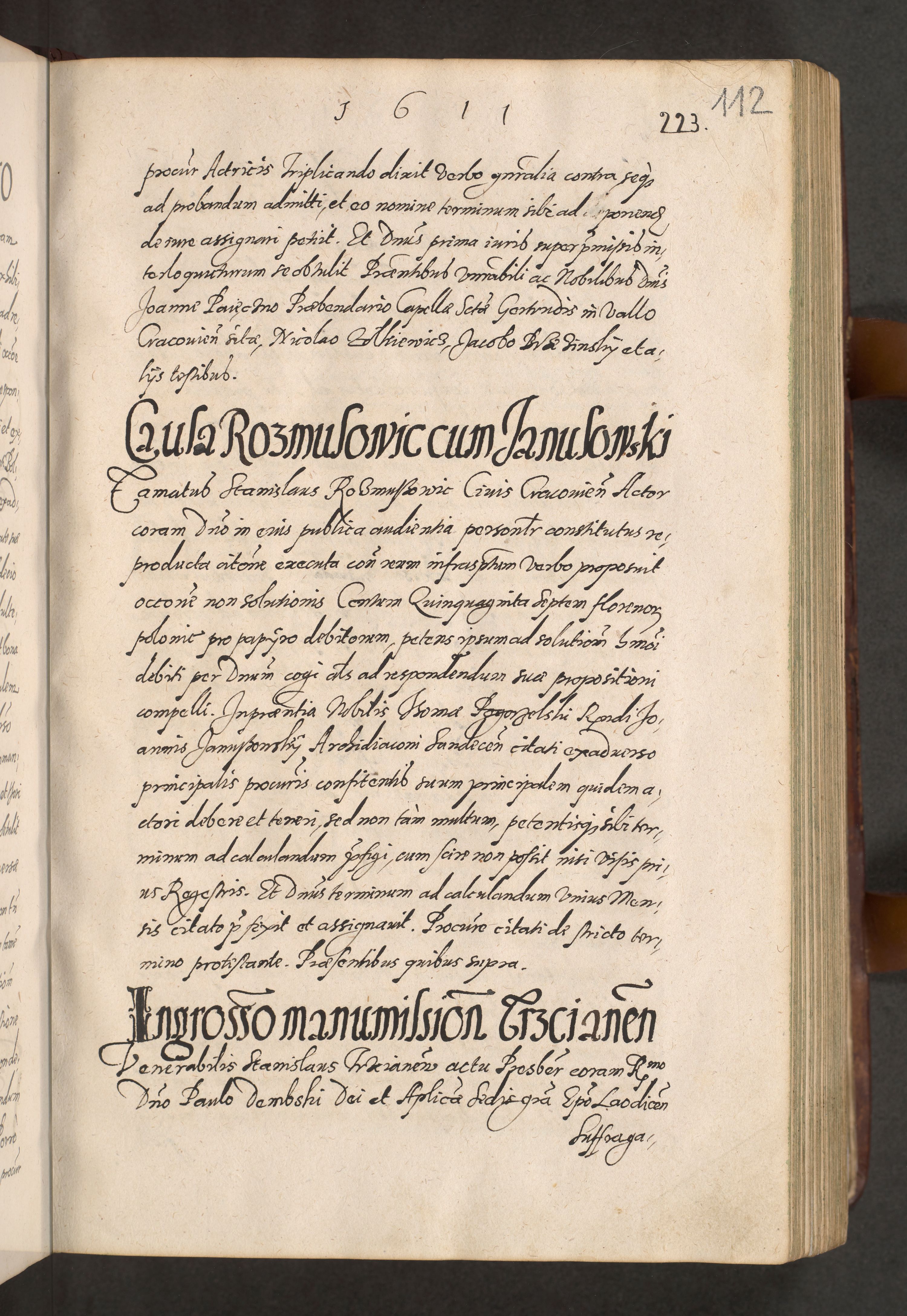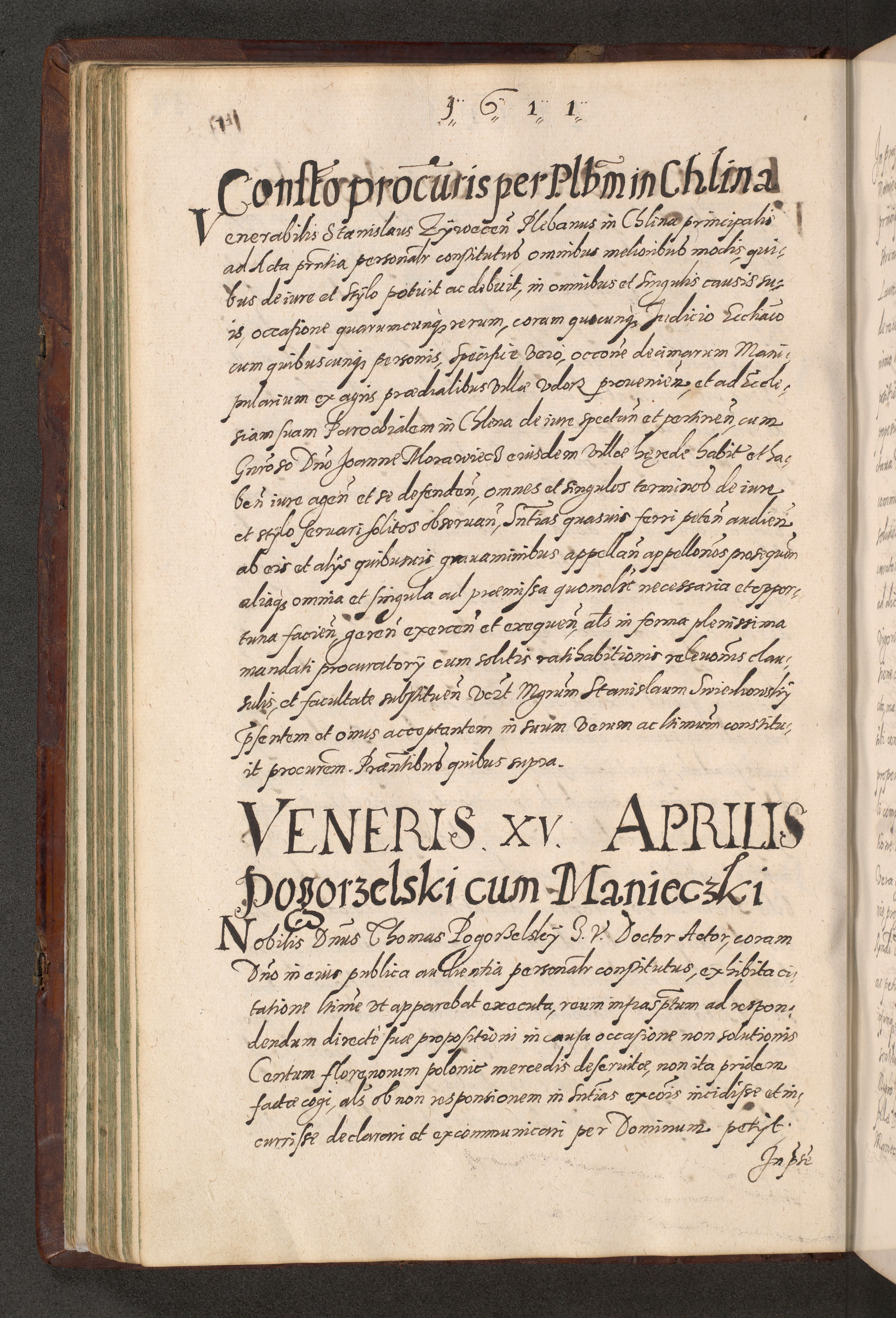 Acta actorum causarum sententiarum tam diffinitiuarum quam interloquutorisrum decretorum obligationum quietationum procuratorum constitutionum etc. etc. coram Reverendo Domino Paulo Dembski Dei et Apostolice Sedis Gratia Episcopalo Dicensis Suffraganeo Canonico Vicario in Spiritualibus et Officiali Generali Cracoviensis ad Annum Domini Millesimum Sexcentesimum Undecimum cuius indictio octava pontificatus Sanctissimi Domini Nostri Domini Pauli Divina Providentia Papae Vti foeliciter continuantur