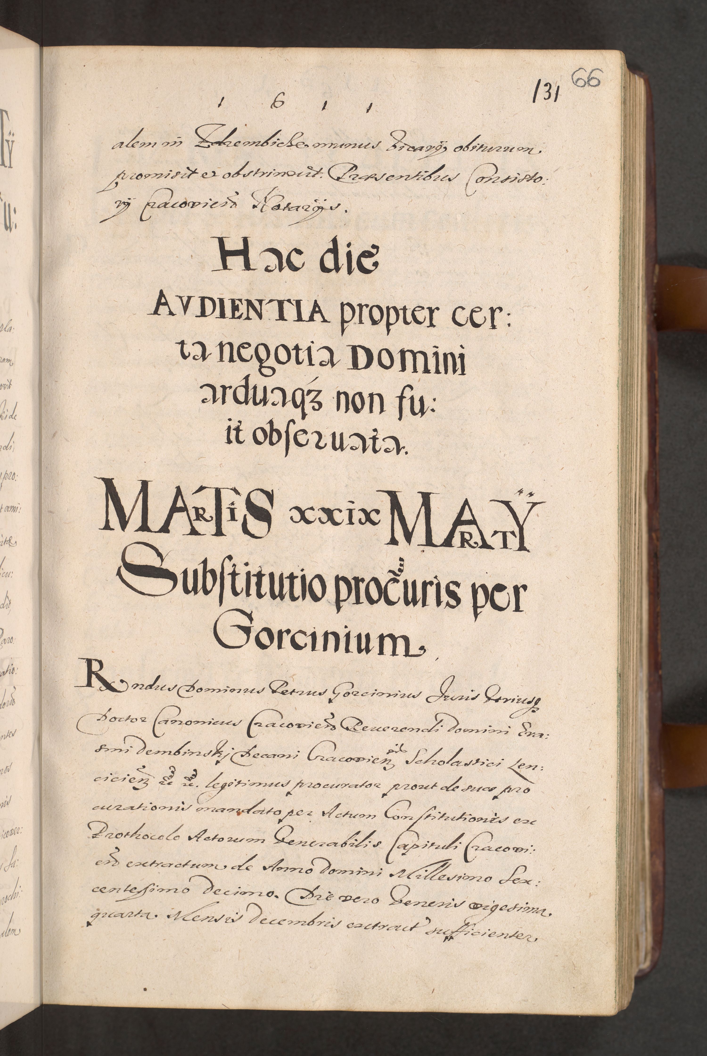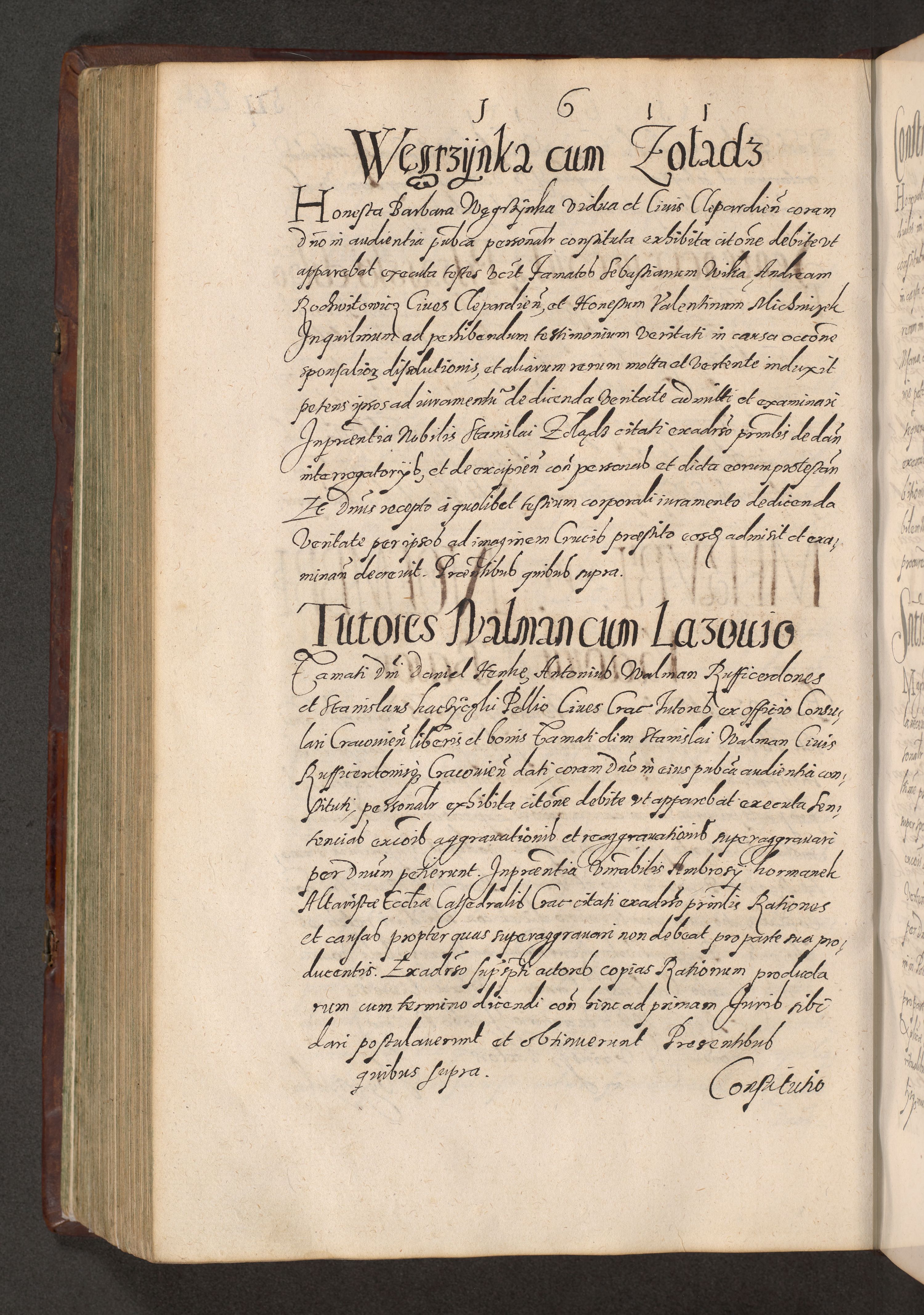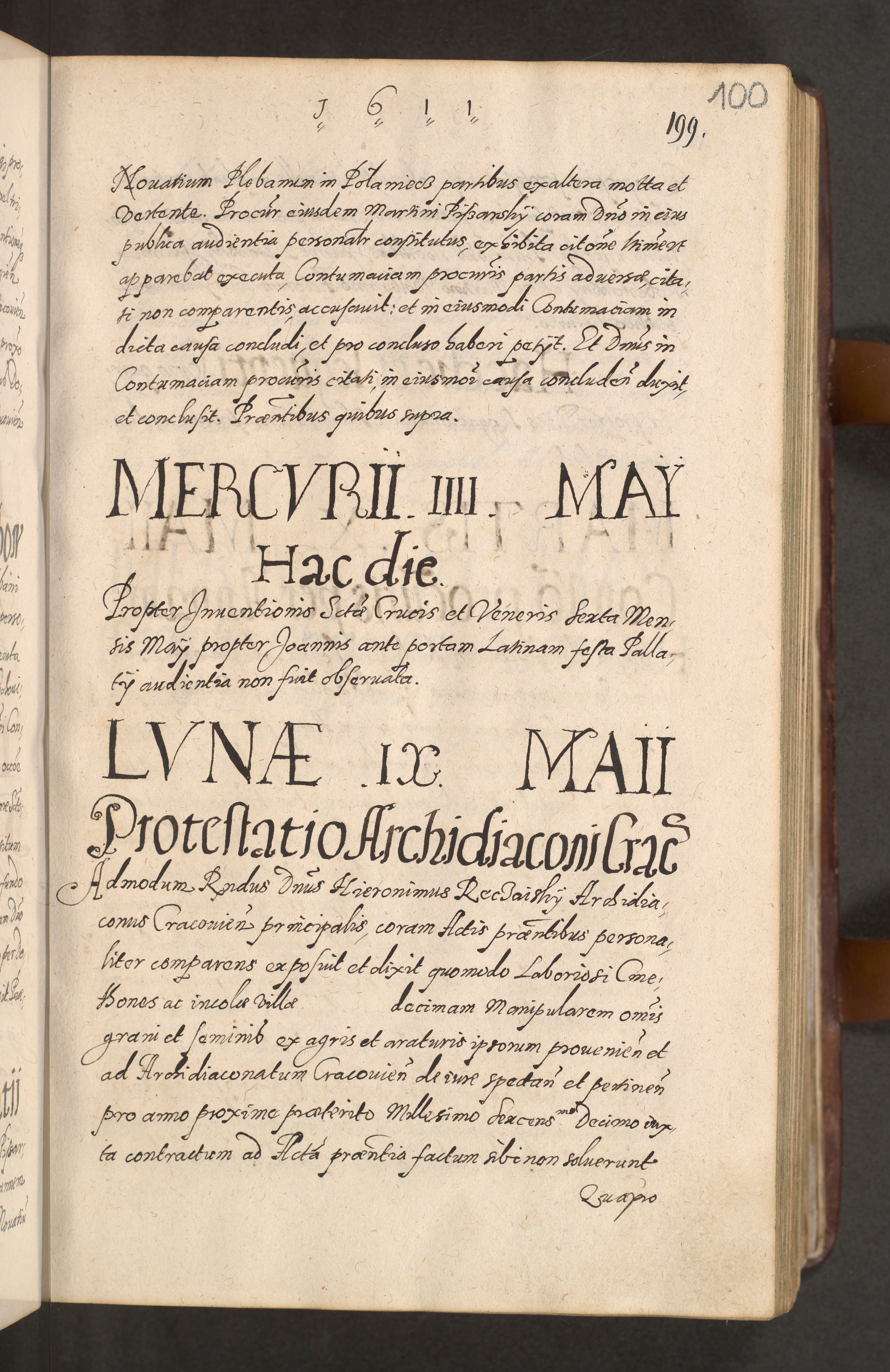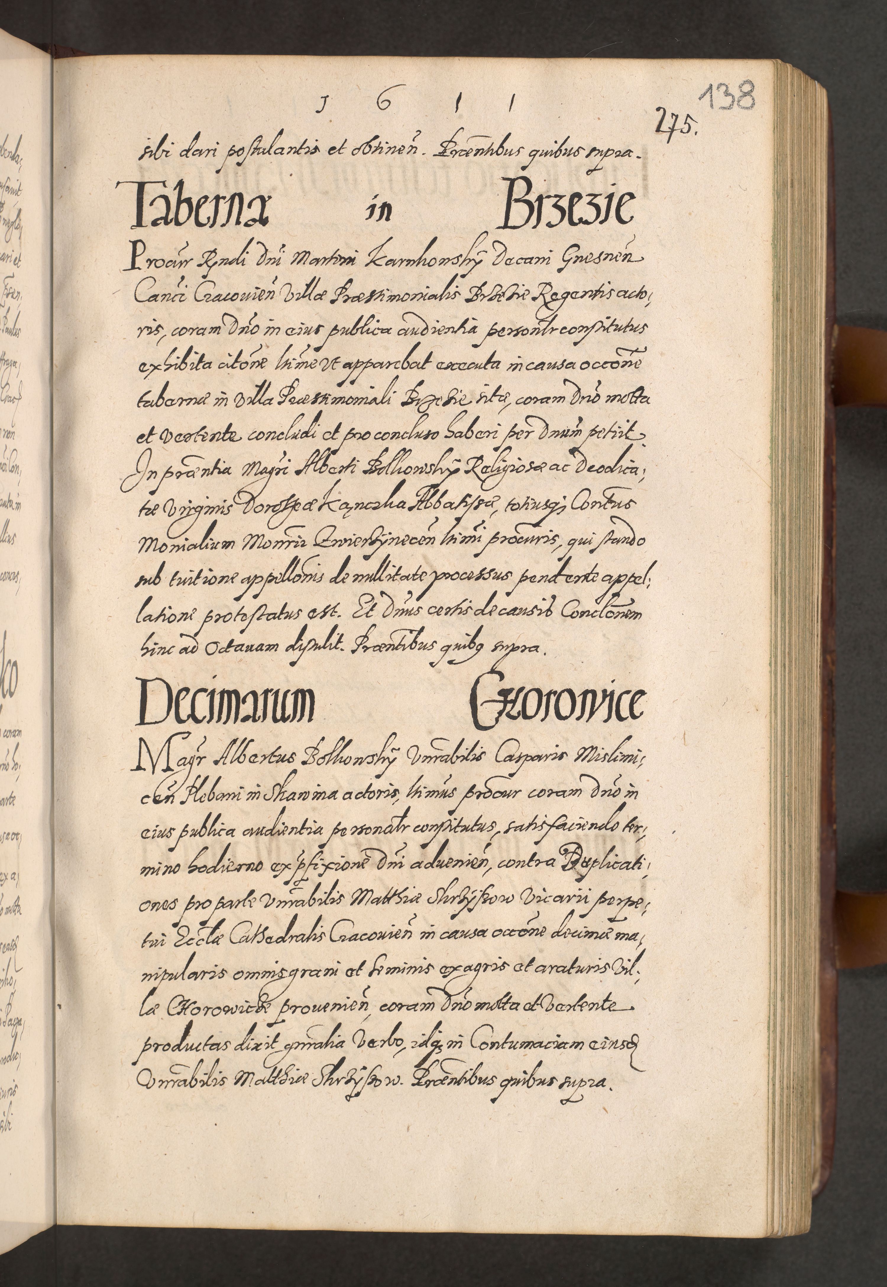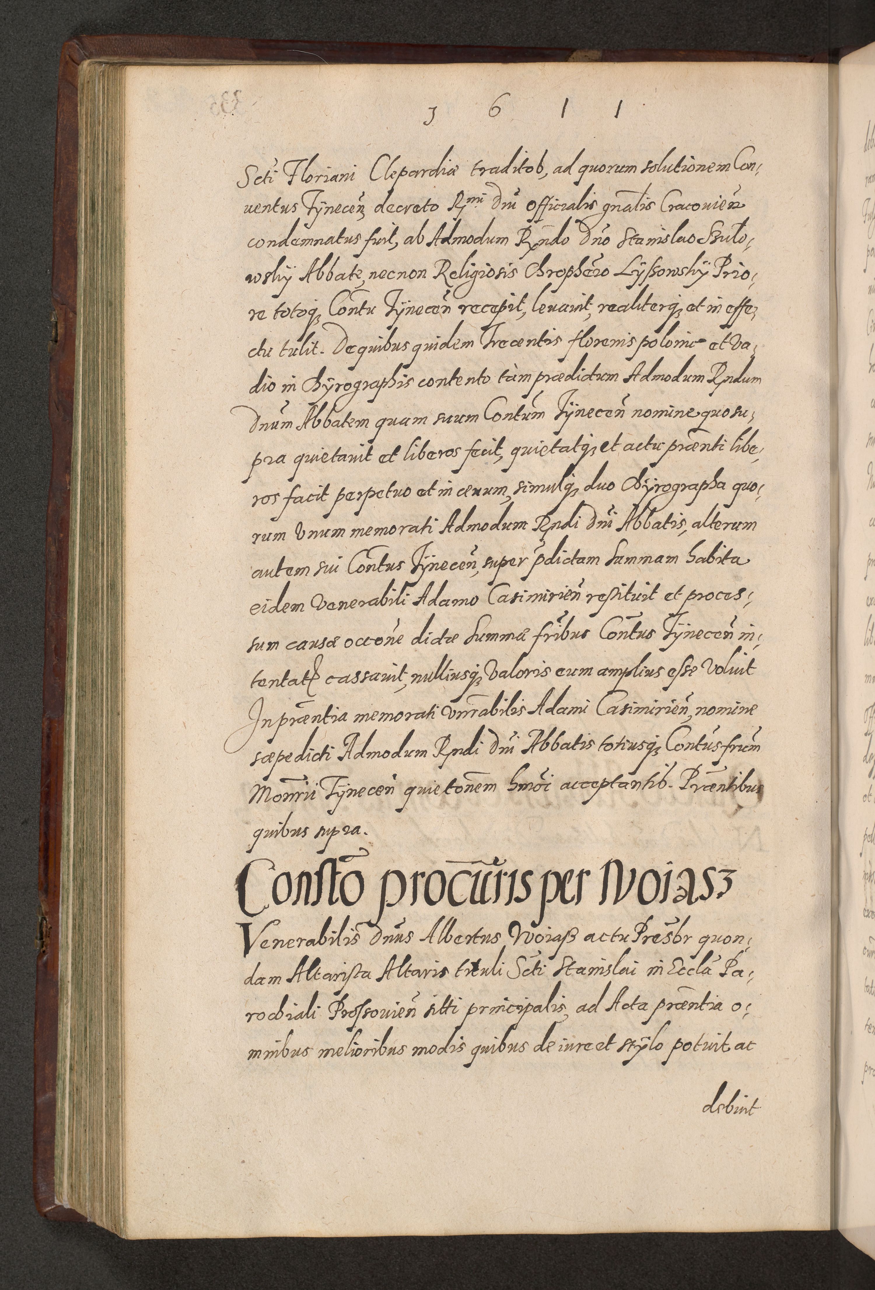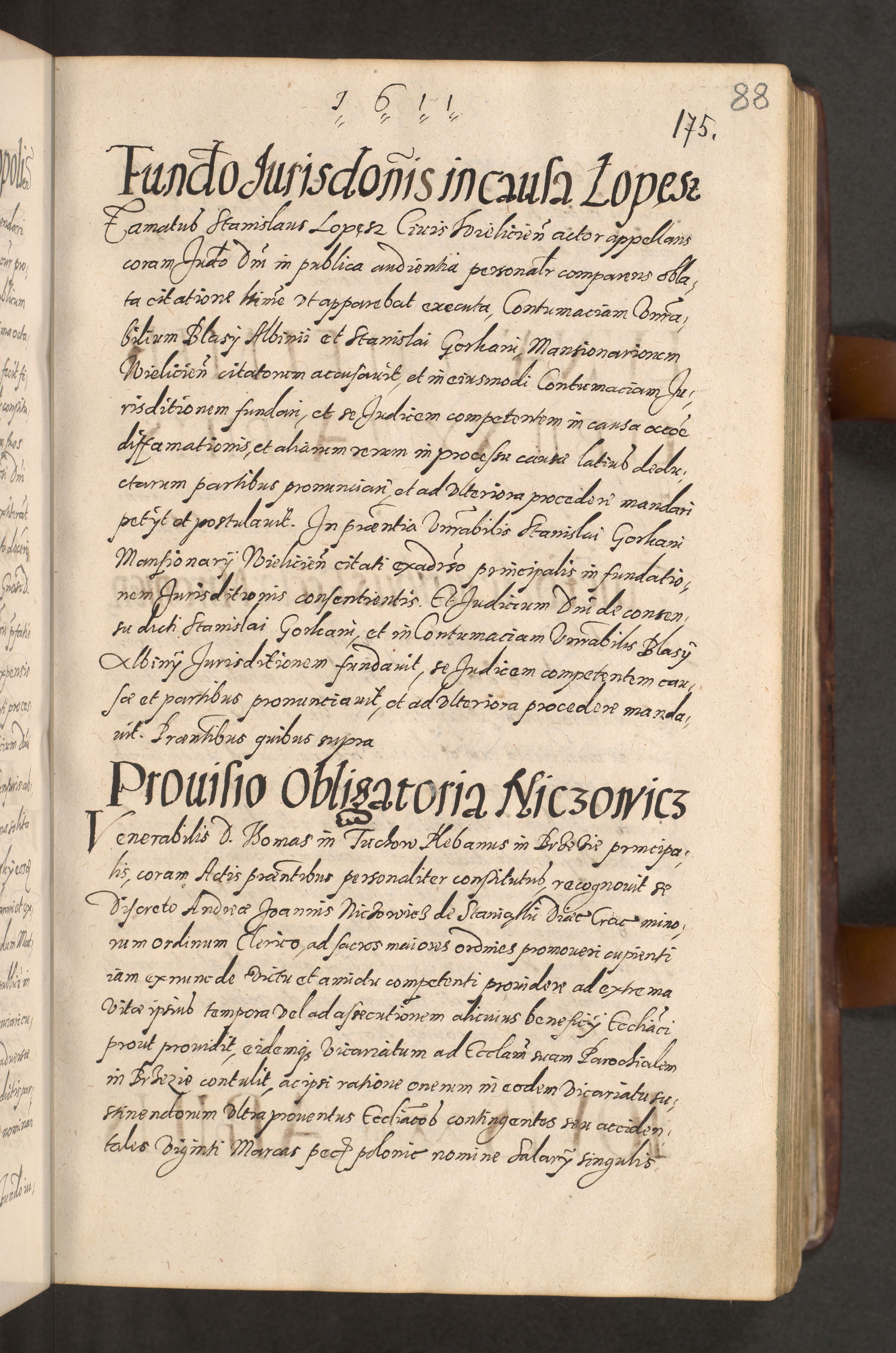 Acta actorum causarum sententiarum tam diffinitiuarum quam interloquutorisrum decretorum obligationum quietationum procuratorum constitutionum etc. etc. coram Reverendo Domino Paulo Dembski Dei et Apostolice Sedis Gratia Episcopalo Dicensis Suffraganeo Canonico Vicario in Spiritualibus et Officiali Generali Cracoviensis ad Annum Domini Millesimum Sexcentesimum Undecimum cuius indictio octava pontificatus Sanctissimi Domini Nostri Domini Pauli Divina Providentia Papae Vti foeliciter continuantur