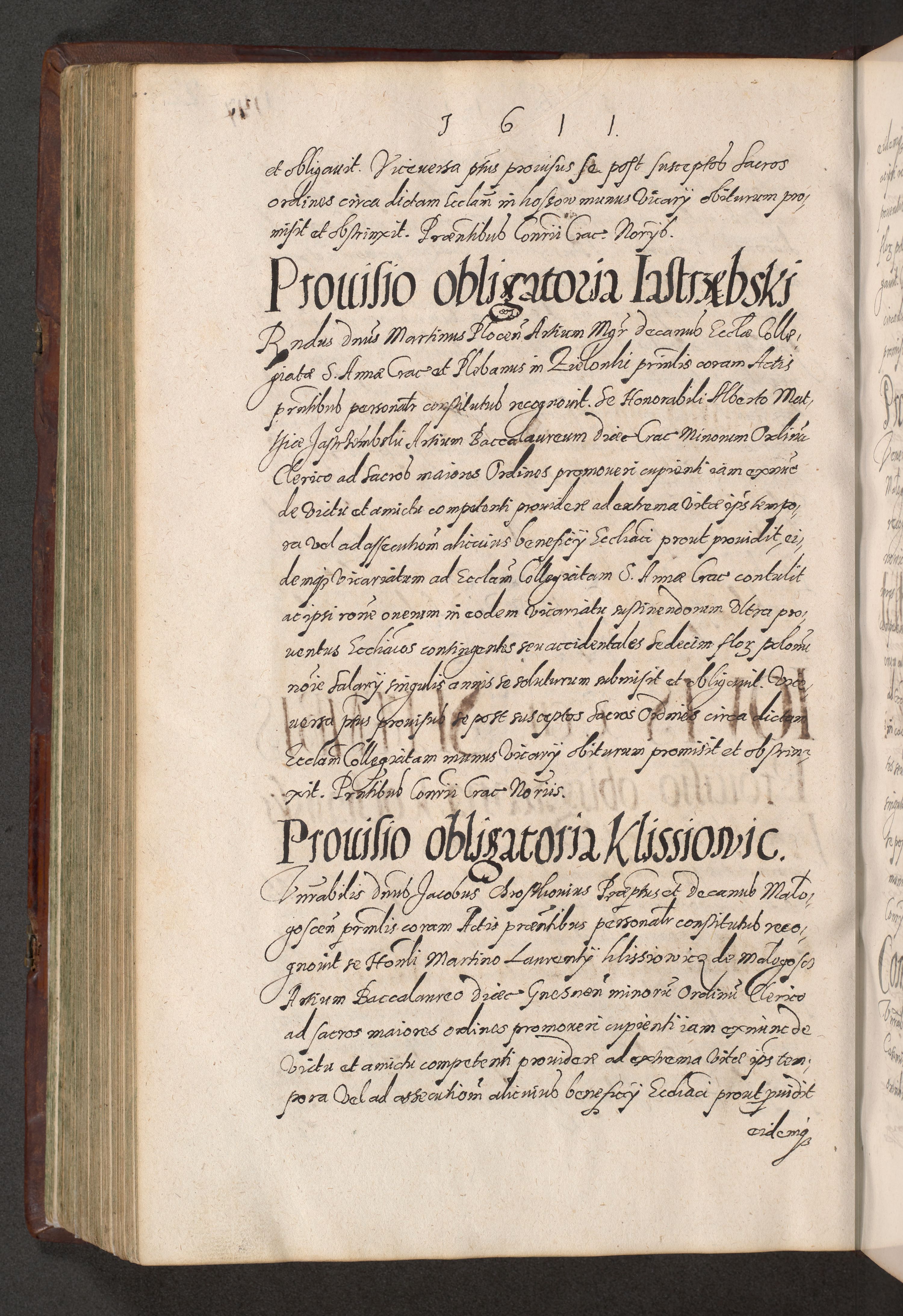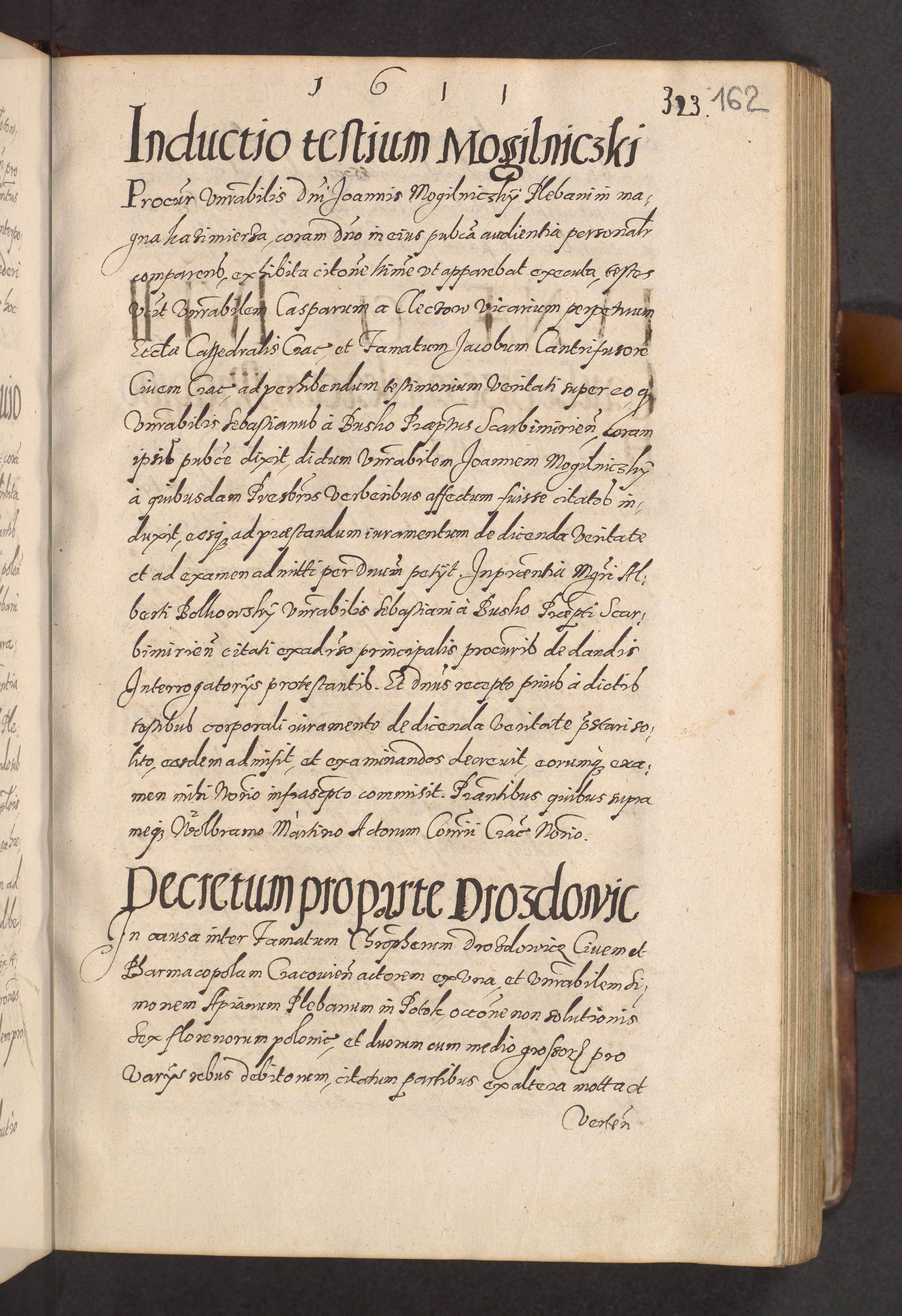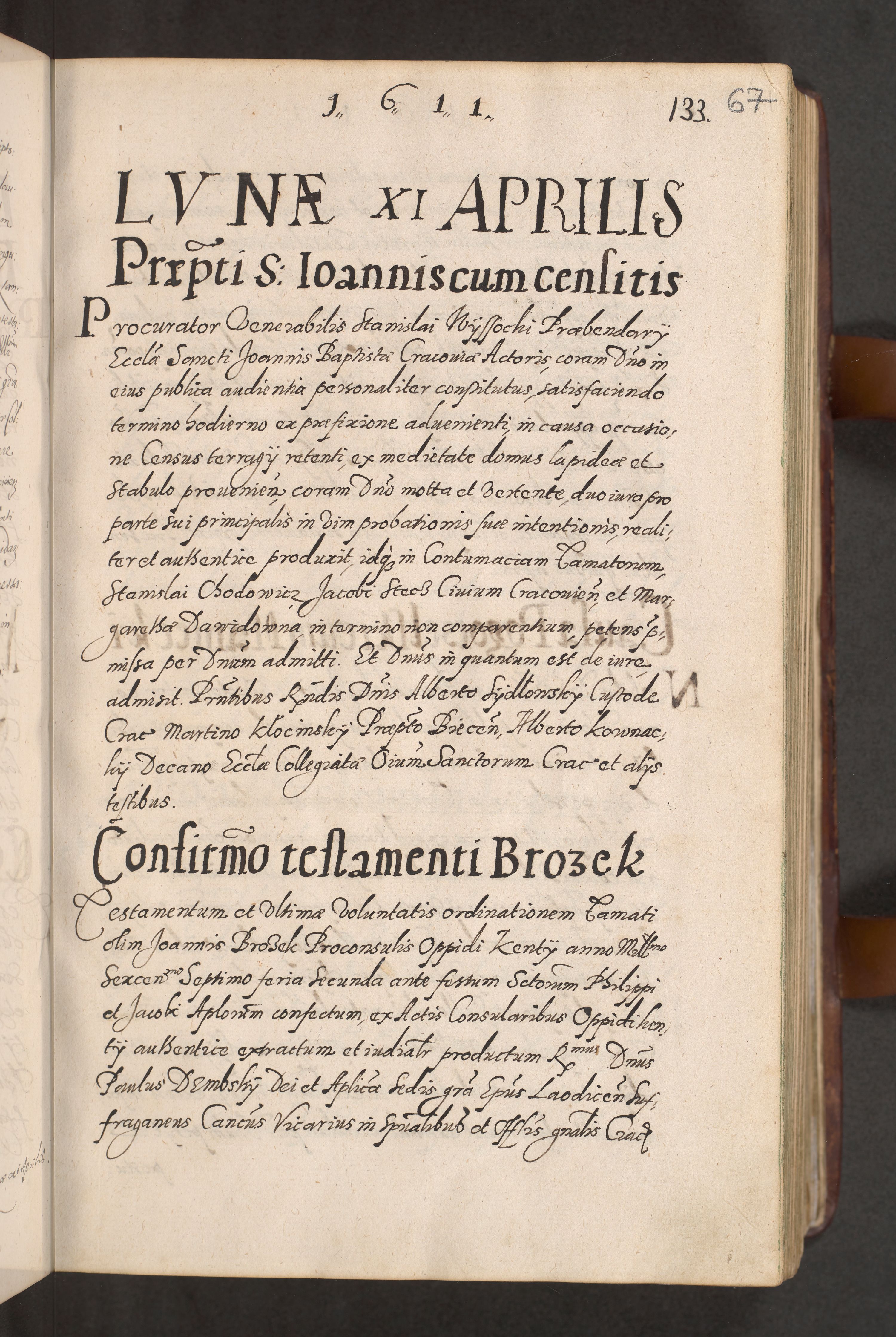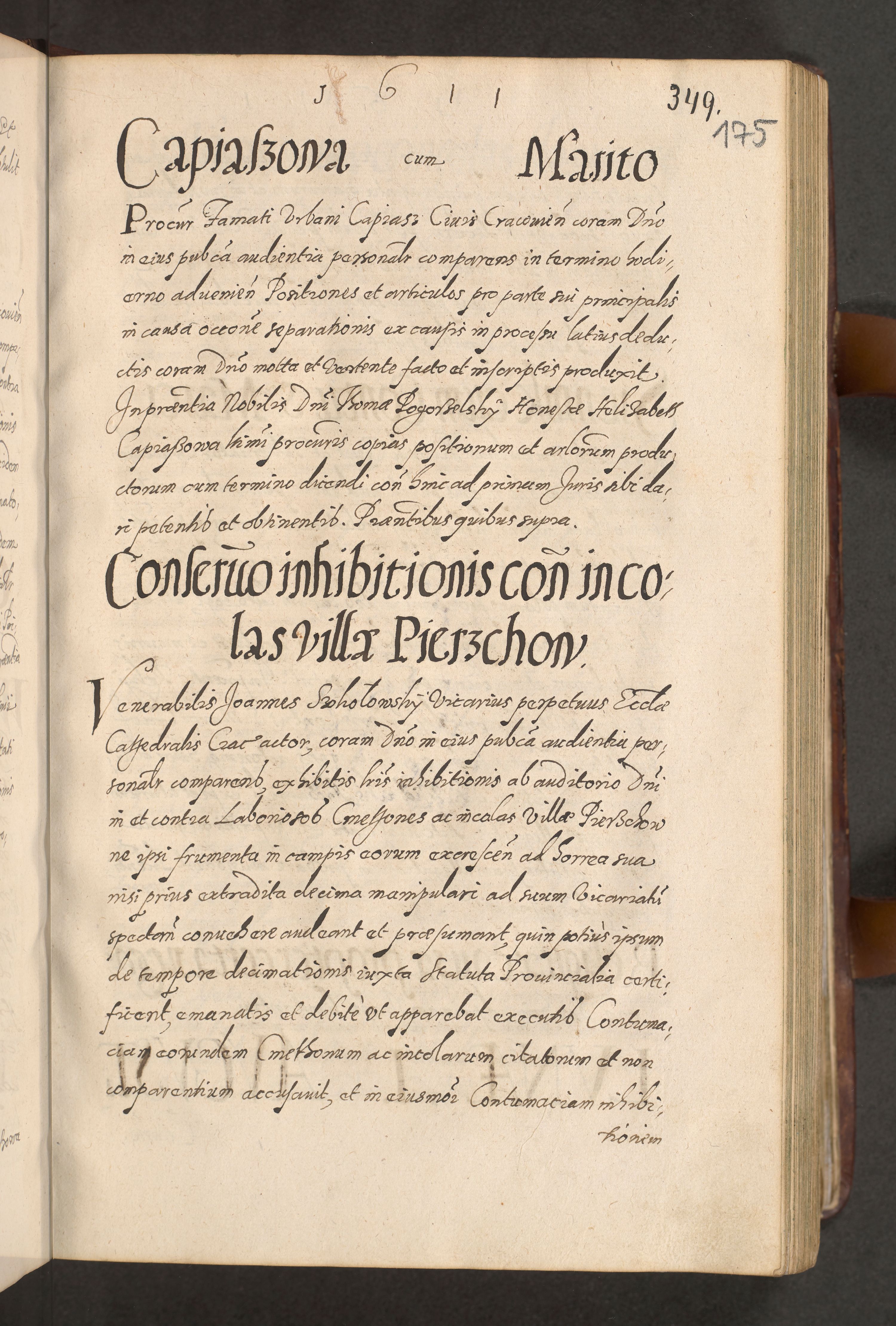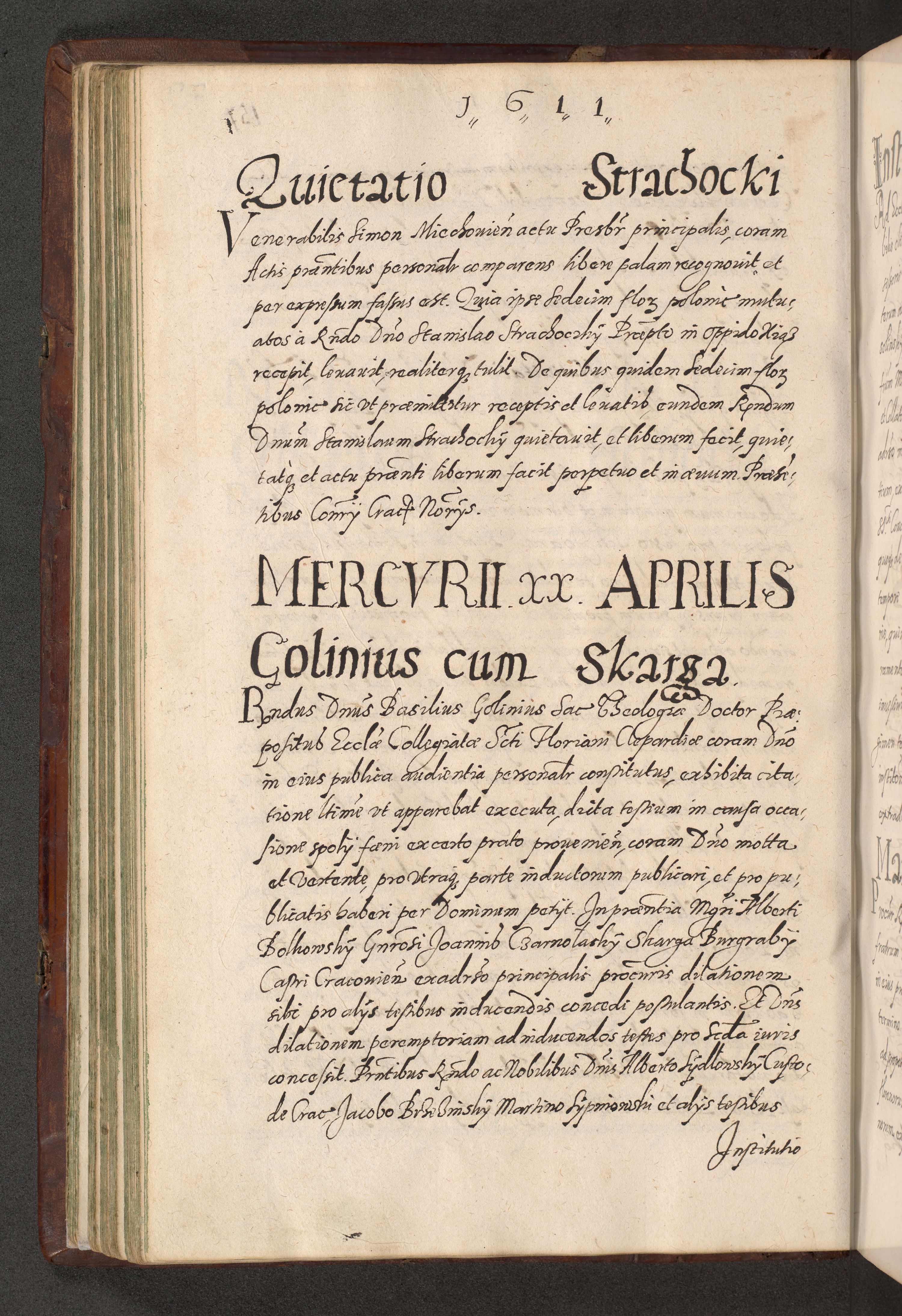 Acta actorum causarum sententiarum tam diffinitiuarum quam interloquutorisrum decretorum obligationum quietationum procuratorum constitutionum etc. etc. coram Reverendo Domino Paulo Dembski Dei et Apostolice Sedis Gratia Episcopalo Dicensis Suffraganeo Canonico Vicario in Spiritualibus et Officiali Generali Cracoviensis ad Annum Domini Millesimum Sexcentesimum Undecimum cuius indictio octava pontificatus Sanctissimi Domini Nostri Domini Pauli Divina Providentia Papae Vti foeliciter continuantur