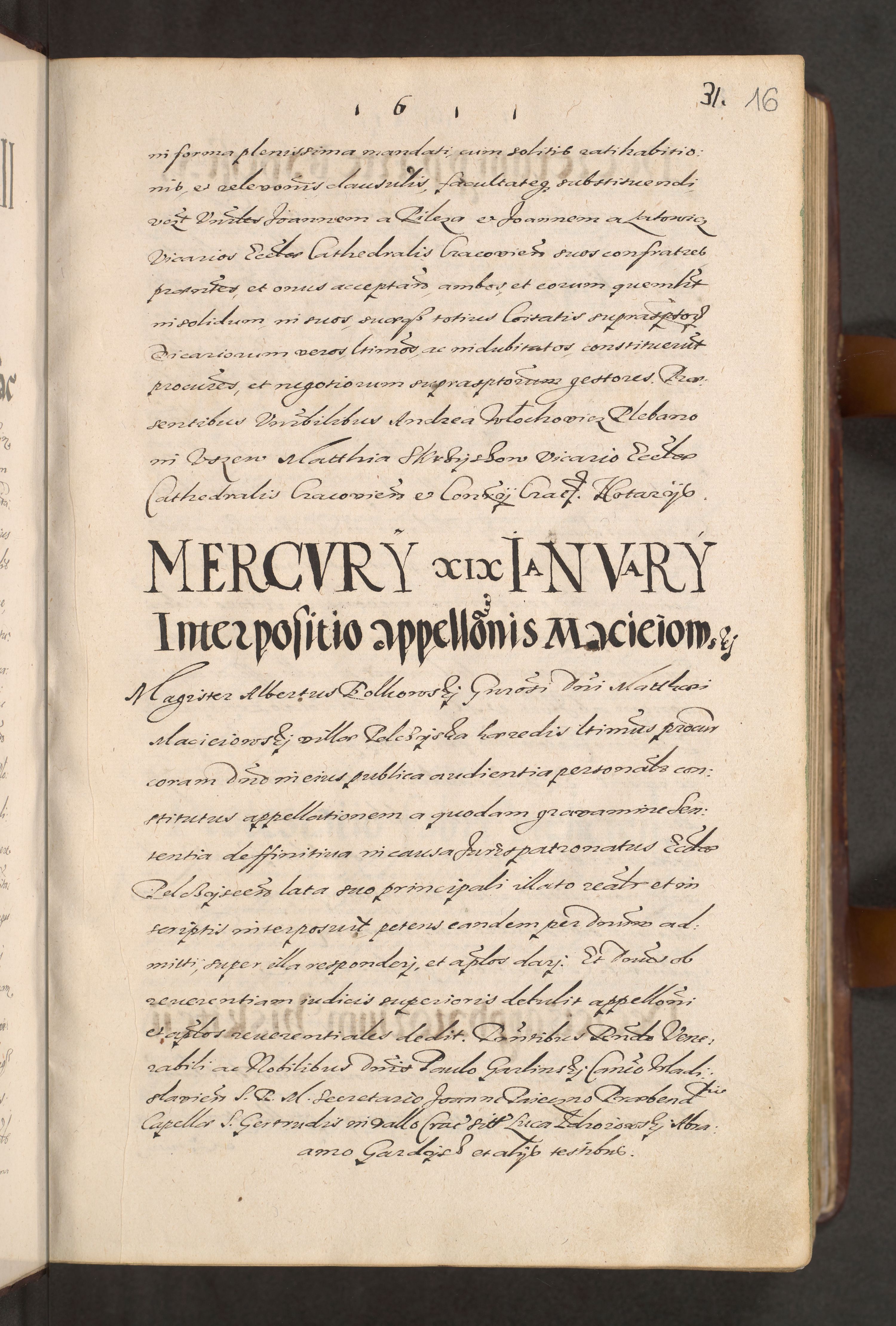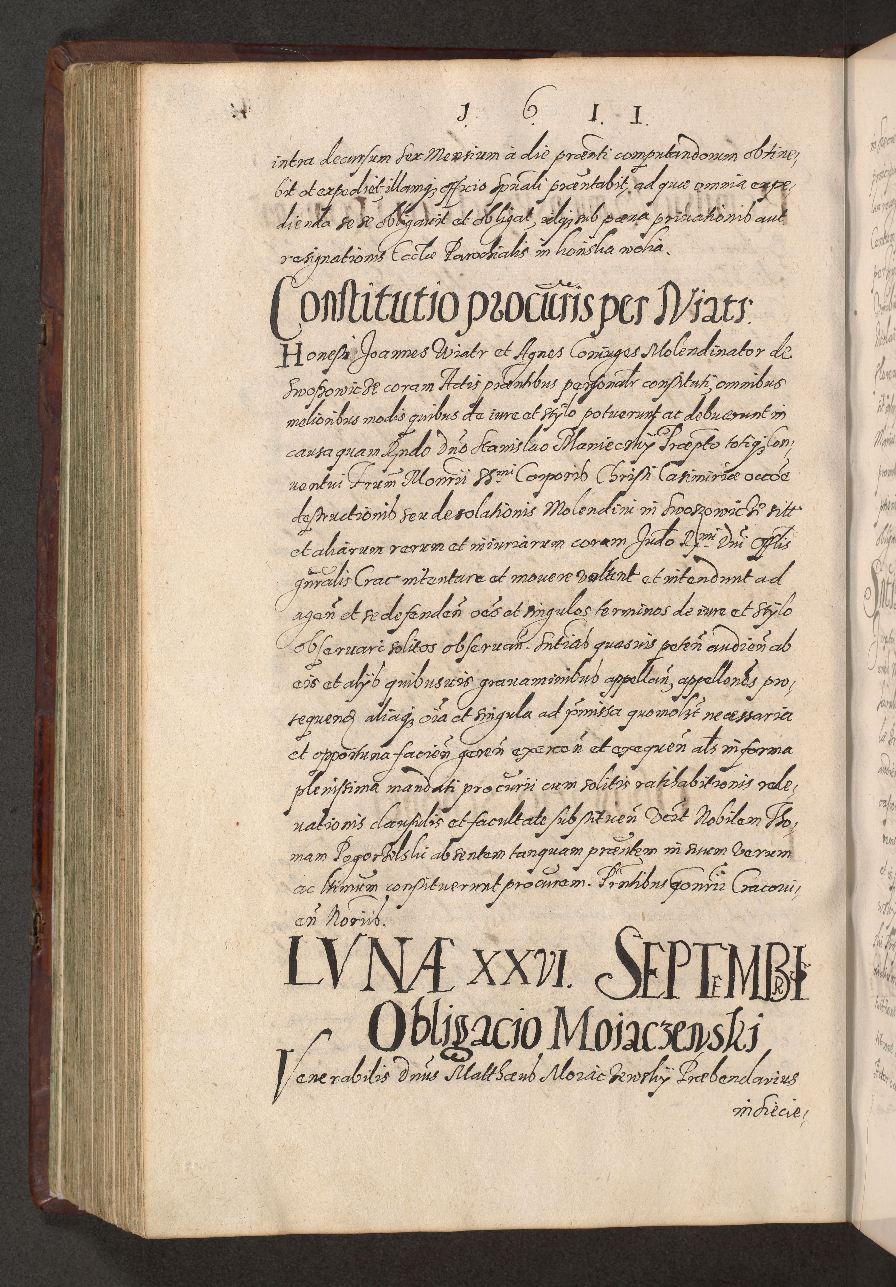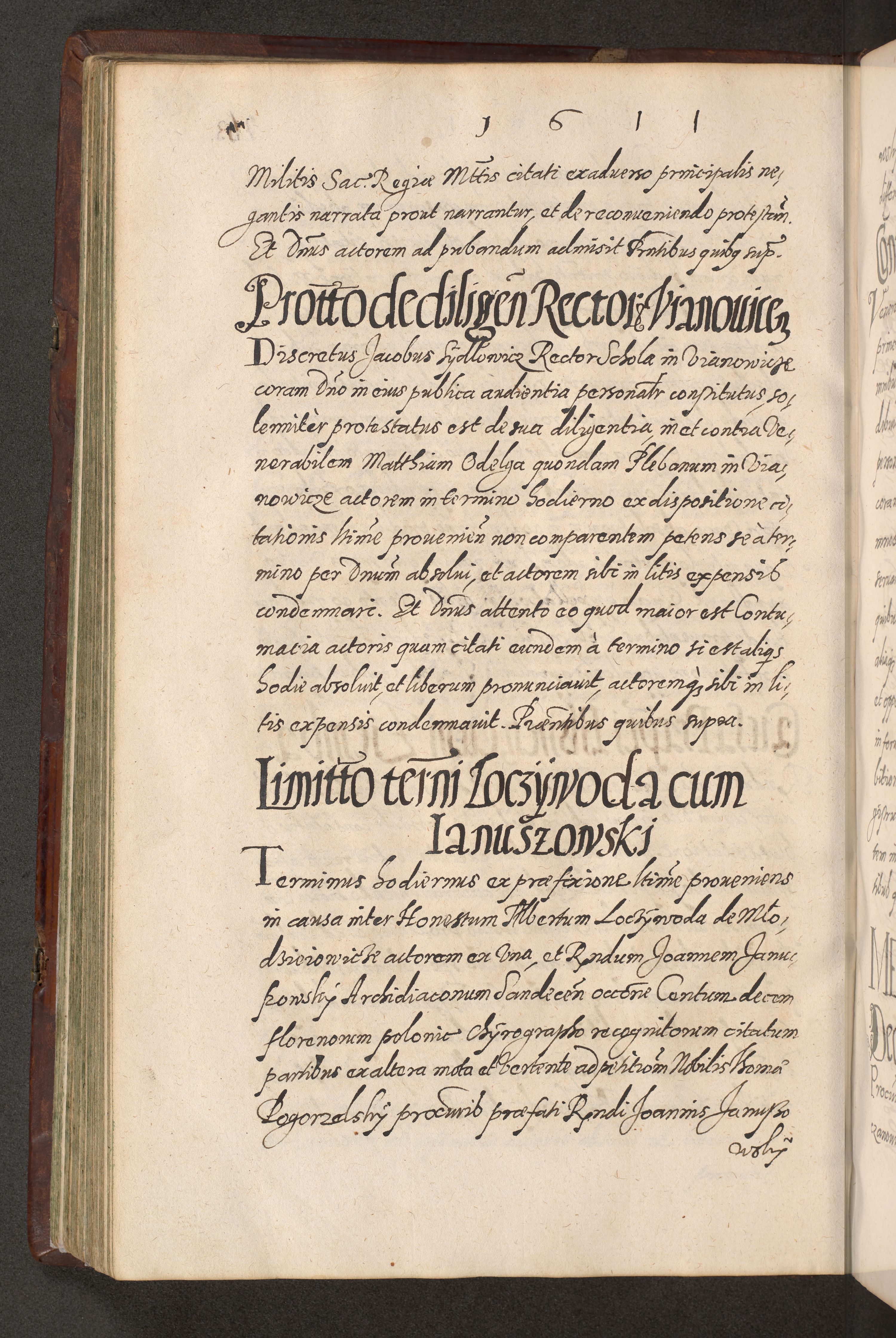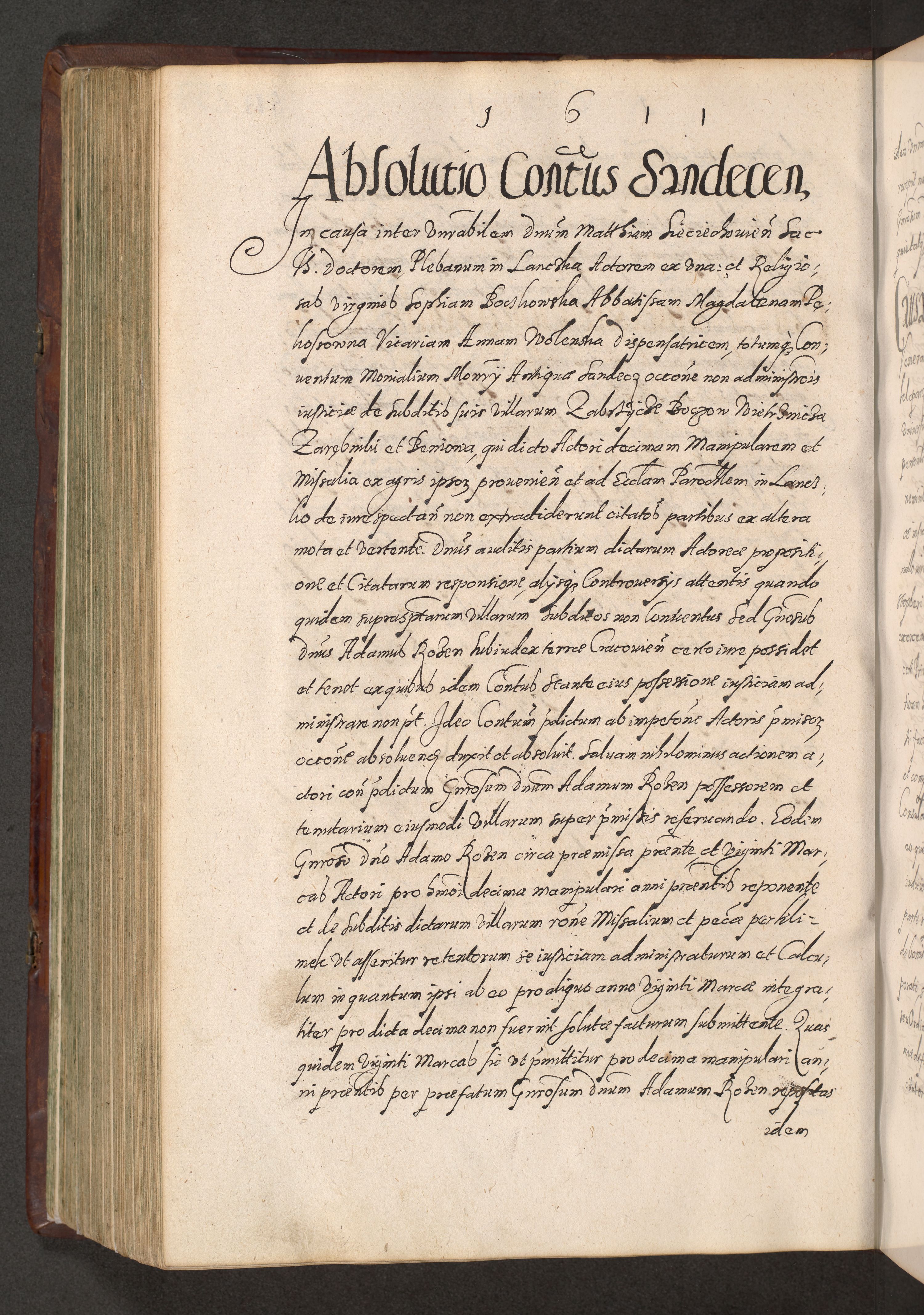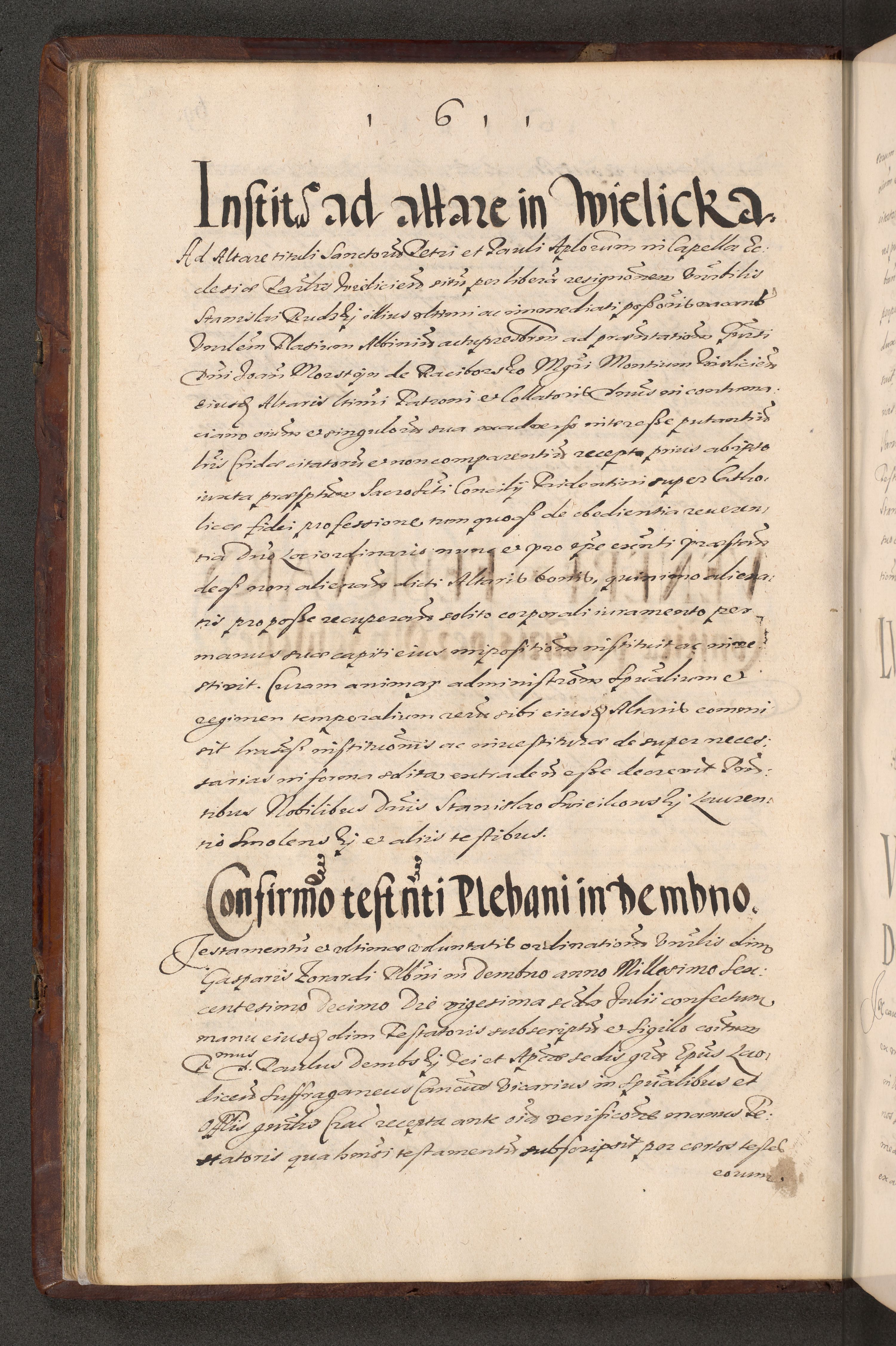 Acta actorum causarum sententiarum tam diffinitiuarum quam interloquutorisrum decretorum obligationum quietationum procuratorum constitutionum etc. etc. coram Reverendo Domino Paulo Dembski Dei et Apostolice Sedis Gratia Episcopalo Dicensis Suffraganeo Canonico Vicario in Spiritualibus et Officiali Generali Cracoviensis ad Annum Domini Millesimum Sexcentesimum Undecimum cuius indictio octava pontificatus Sanctissimi Domini Nostri Domini Pauli Divina Providentia Papae Vti foeliciter continuantur