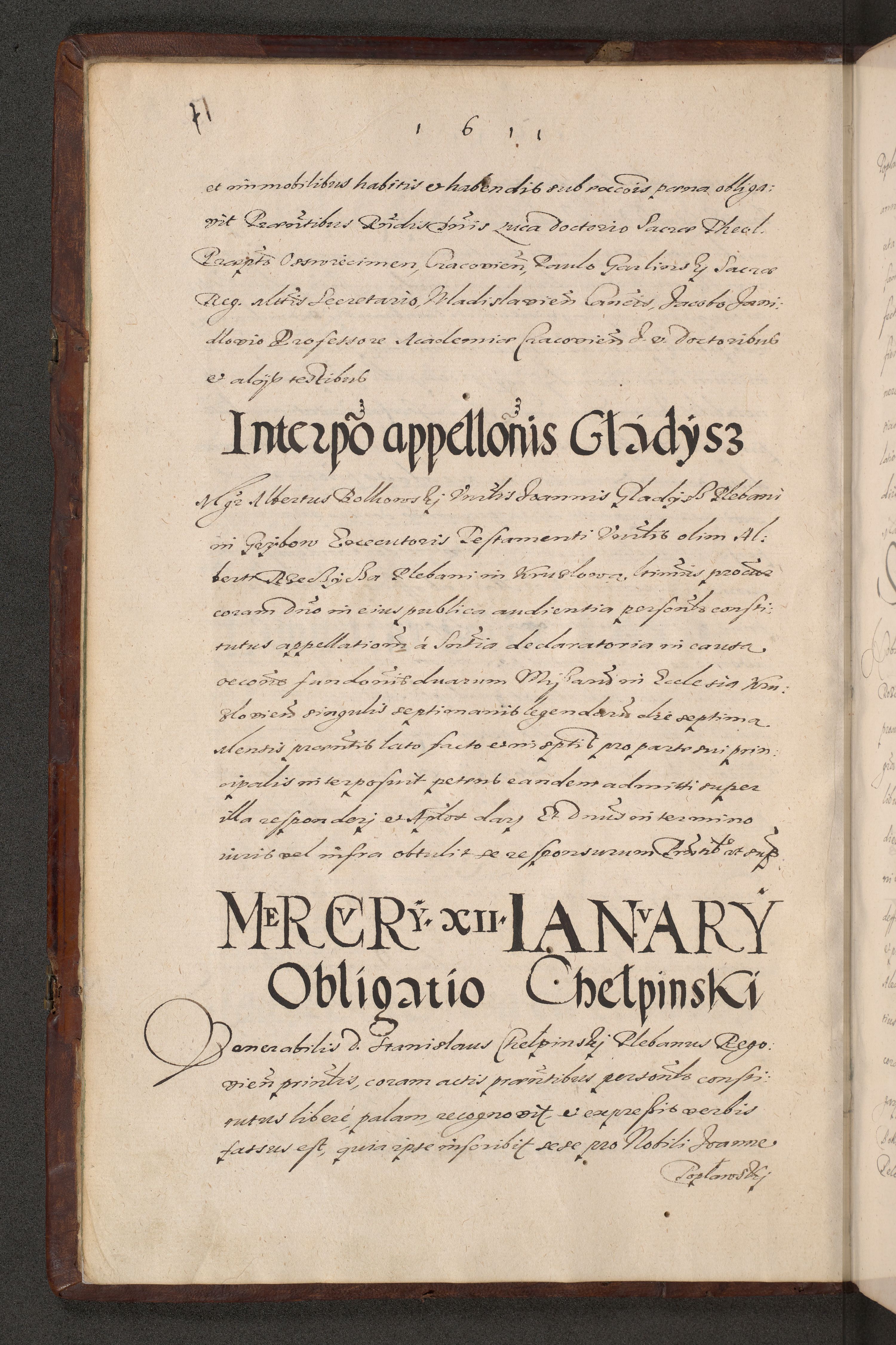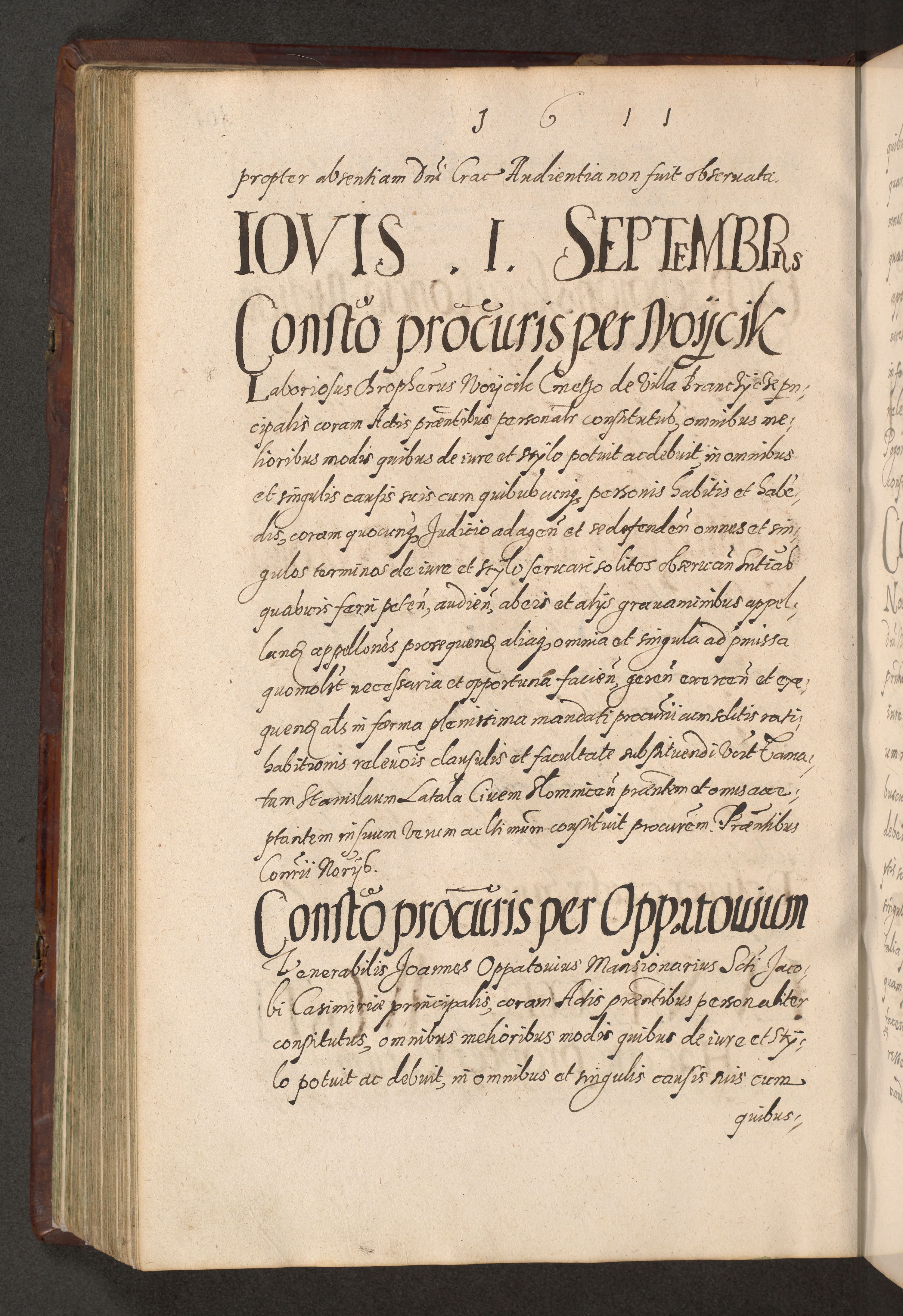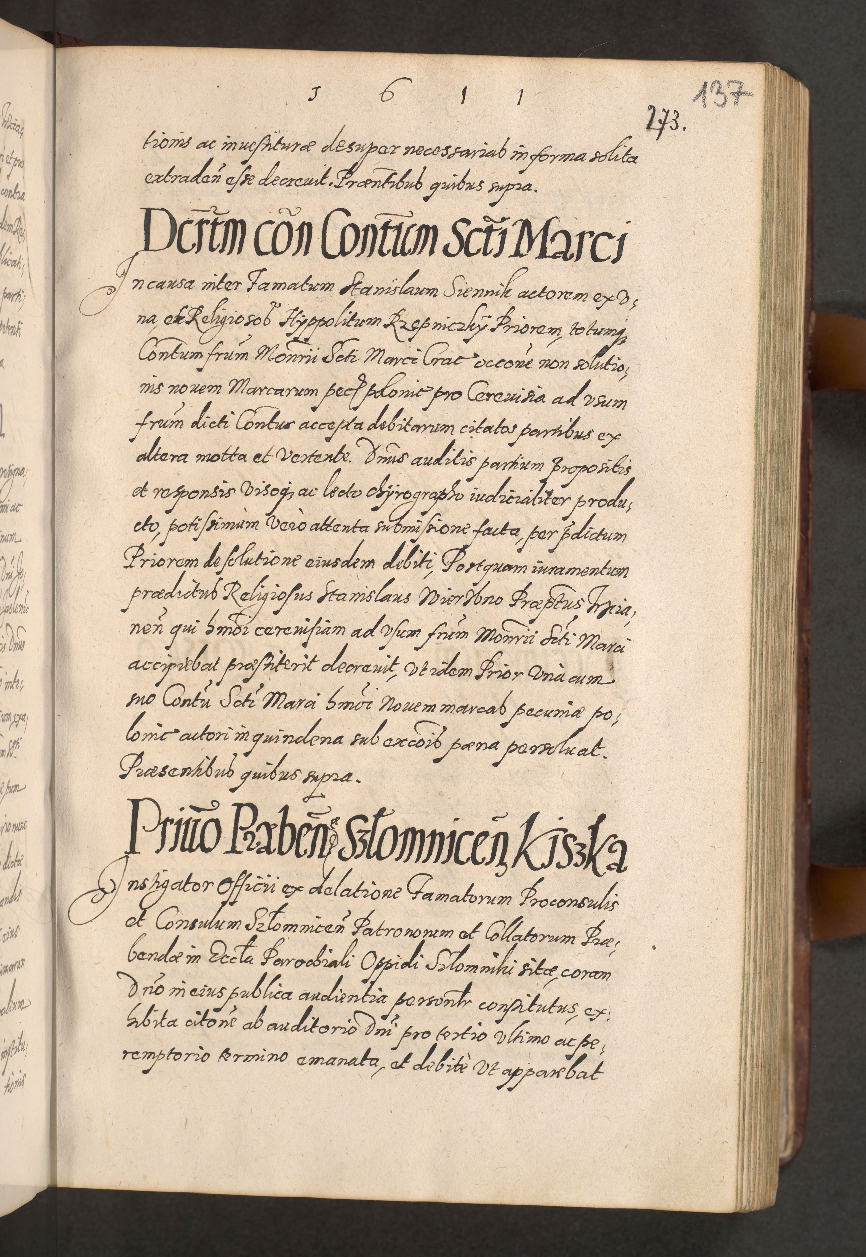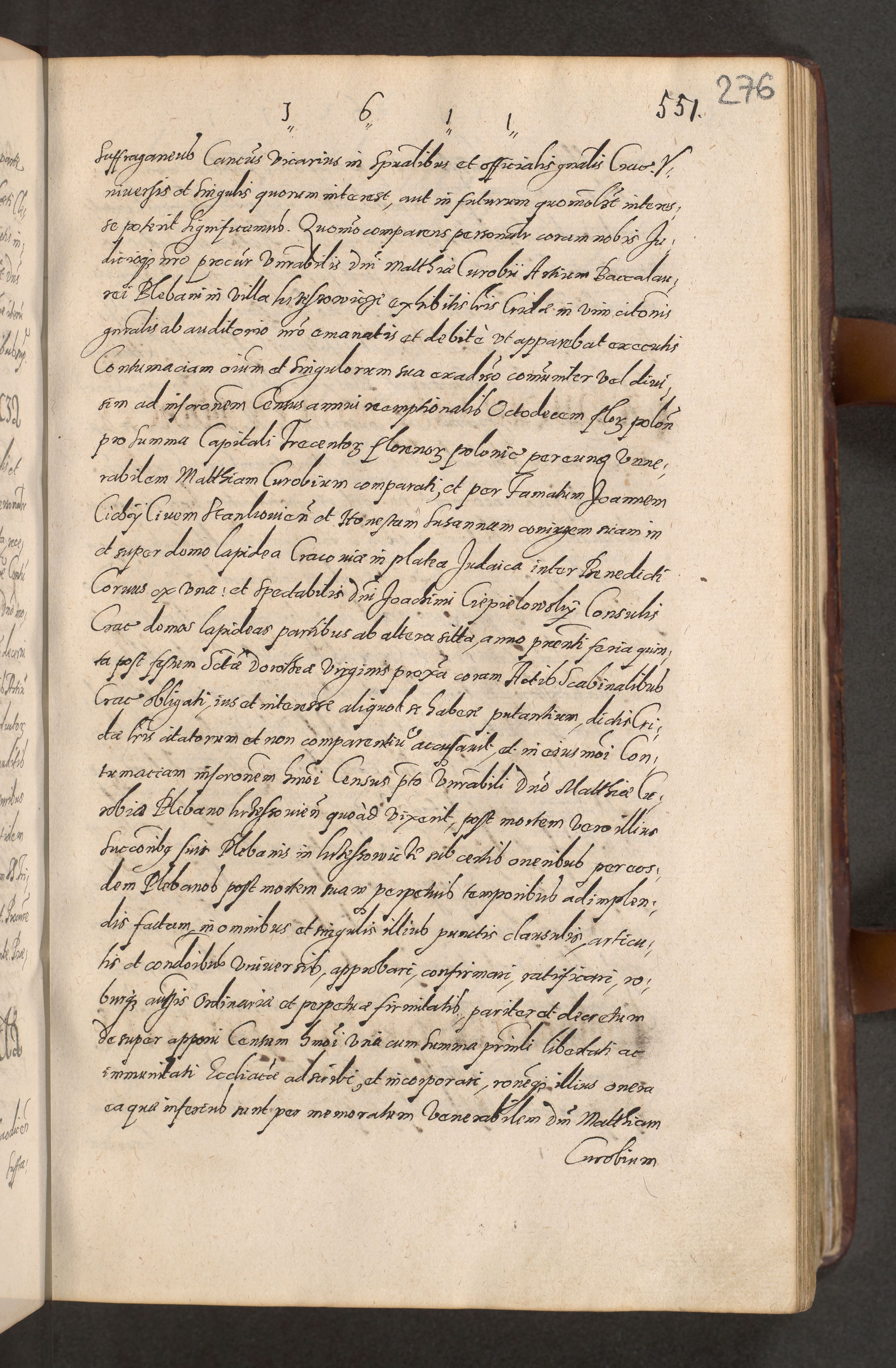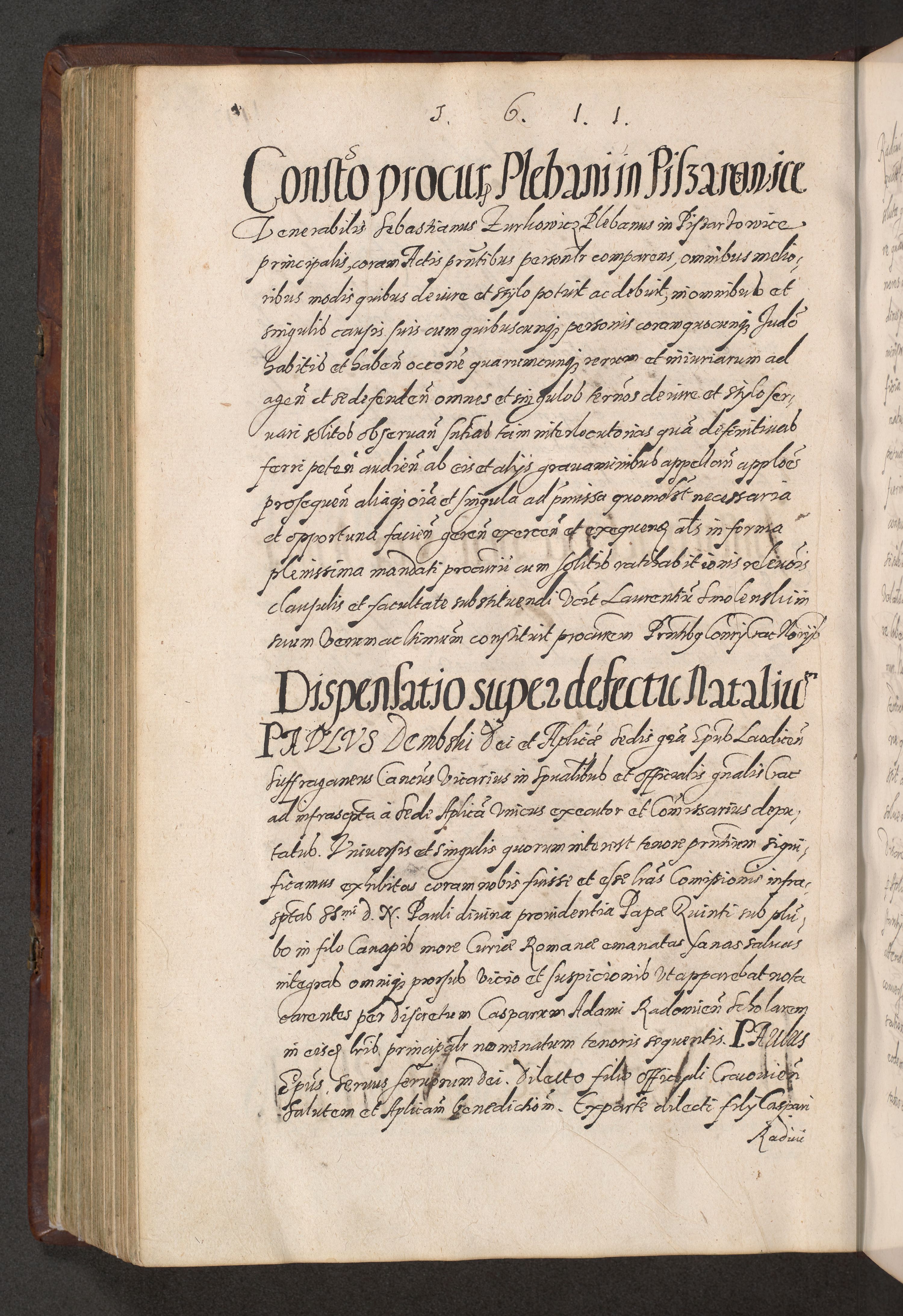 Acta actorum causarum sententiarum tam diffinitiuarum quam interloquutorisrum decretorum obligationum quietationum procuratorum constitutionum etc. etc. coram Reverendo Domino Paulo Dembski Dei et Apostolice Sedis Gratia Episcopalo Dicensis Suffraganeo Canonico Vicario in Spiritualibus et Officiali Generali Cracoviensis ad Annum Domini Millesimum Sexcentesimum Undecimum cuius indictio octava pontificatus Sanctissimi Domini Nostri Domini Pauli Divina Providentia Papae Vti foeliciter continuantur