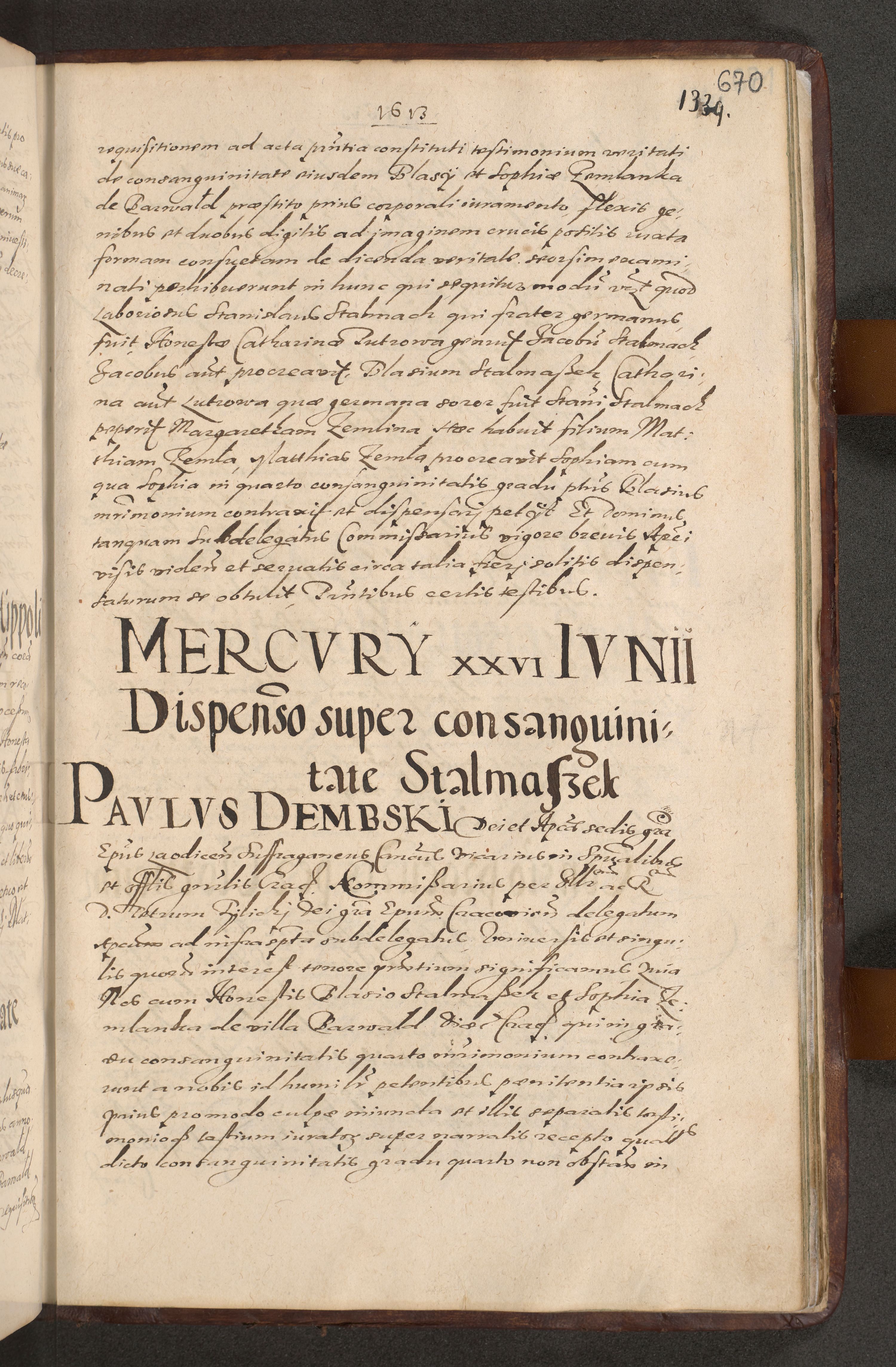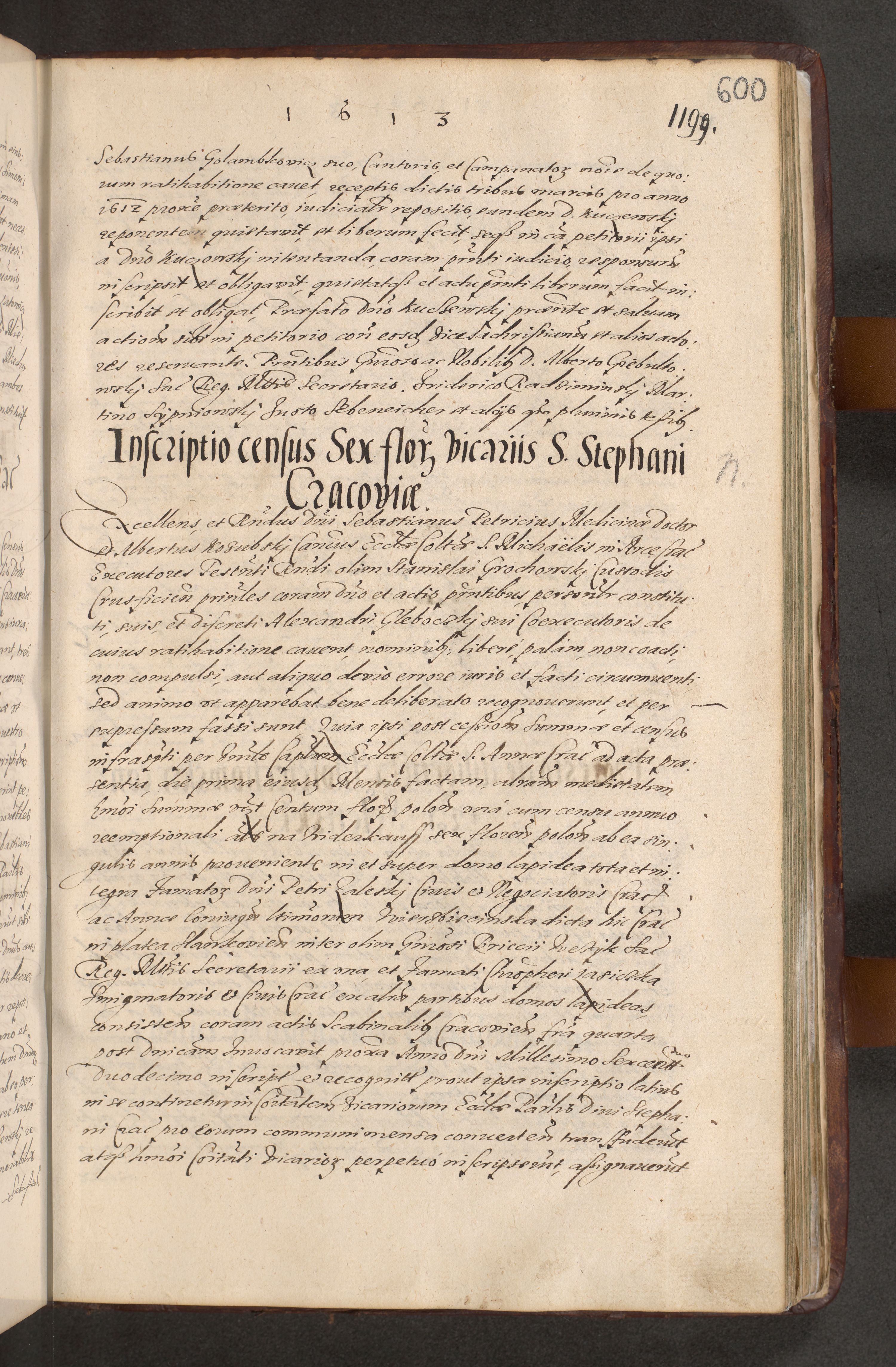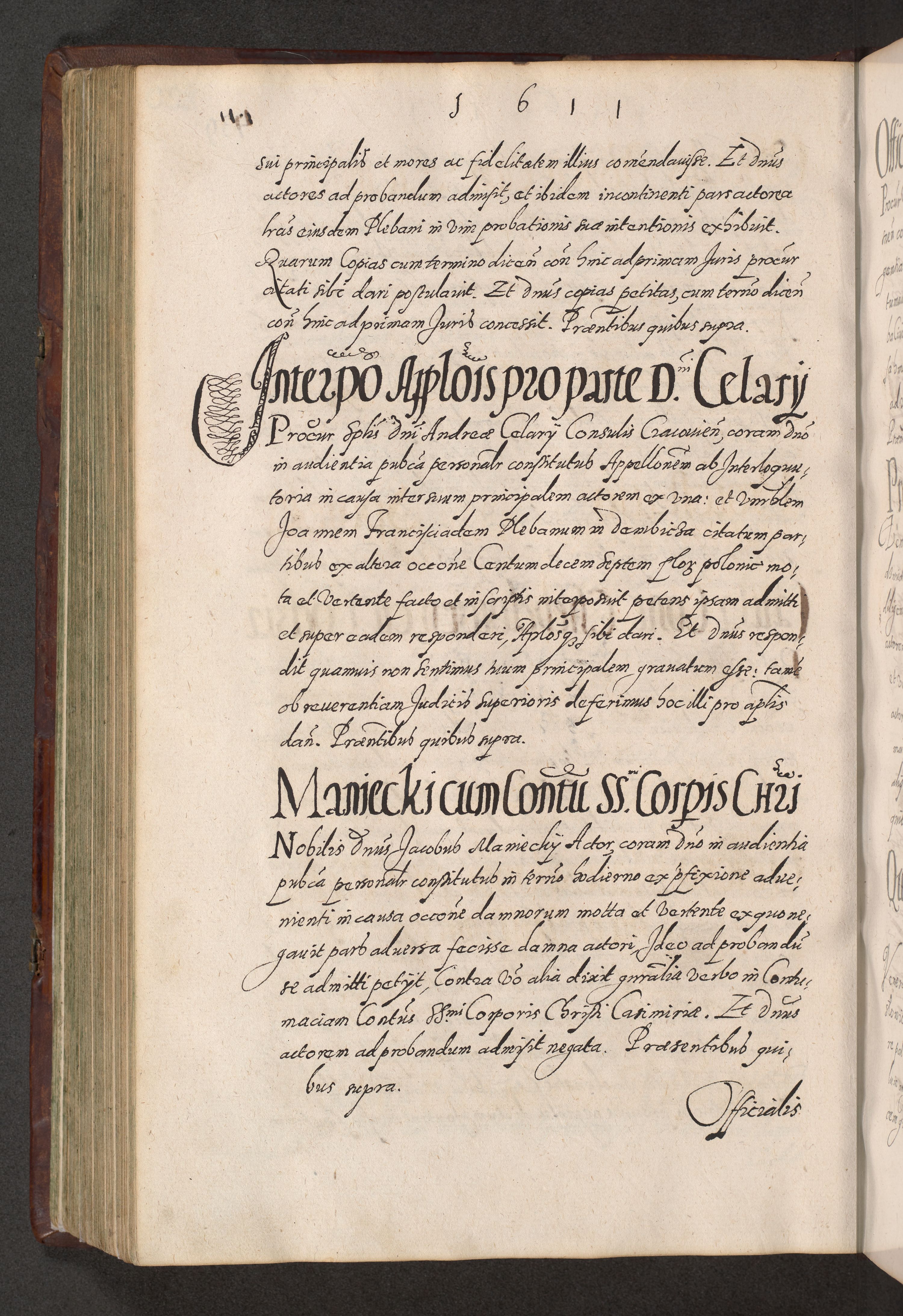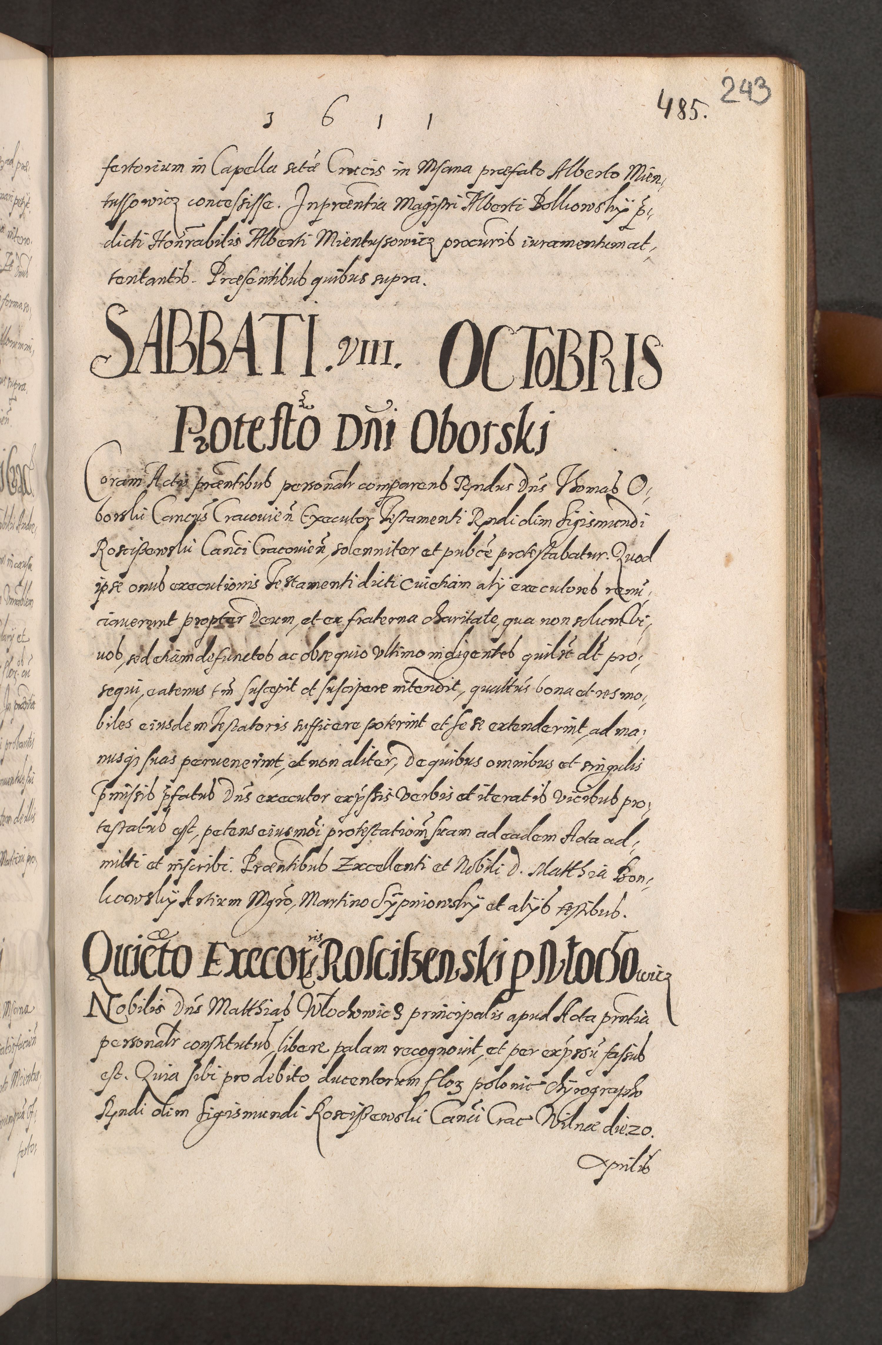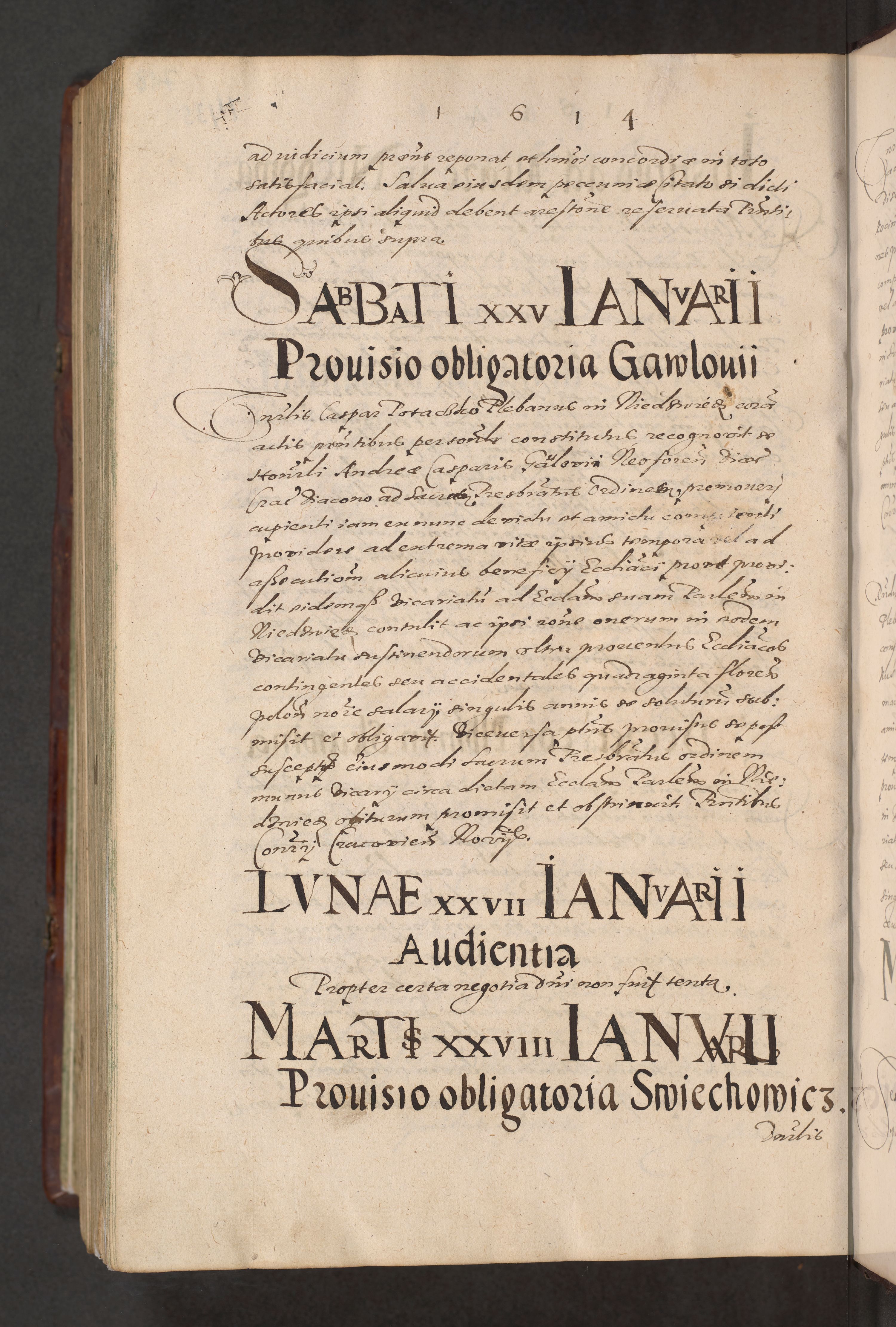 Acta actorum causarum sententiarum tam diffinitiuarum quam interloquutorisrum decretorum obligationum quietationum procuratorum constitutionum etc. etc. coram Reverendo Domino Paulo Dembski Dei et Apostolice Sedis Gratia Episcopalo Dicensis Suffraganeo Canonico Vicario in Spiritualibus et Officiali Generali Cracoviensis ad Annum Domini Millesimum Sexcentesimum Undecimum cuius indictio octava pontificatus Sanctissimi Domini Nostri Domini Pauli Divina Providentia Papae Vti foeliciter continuantur