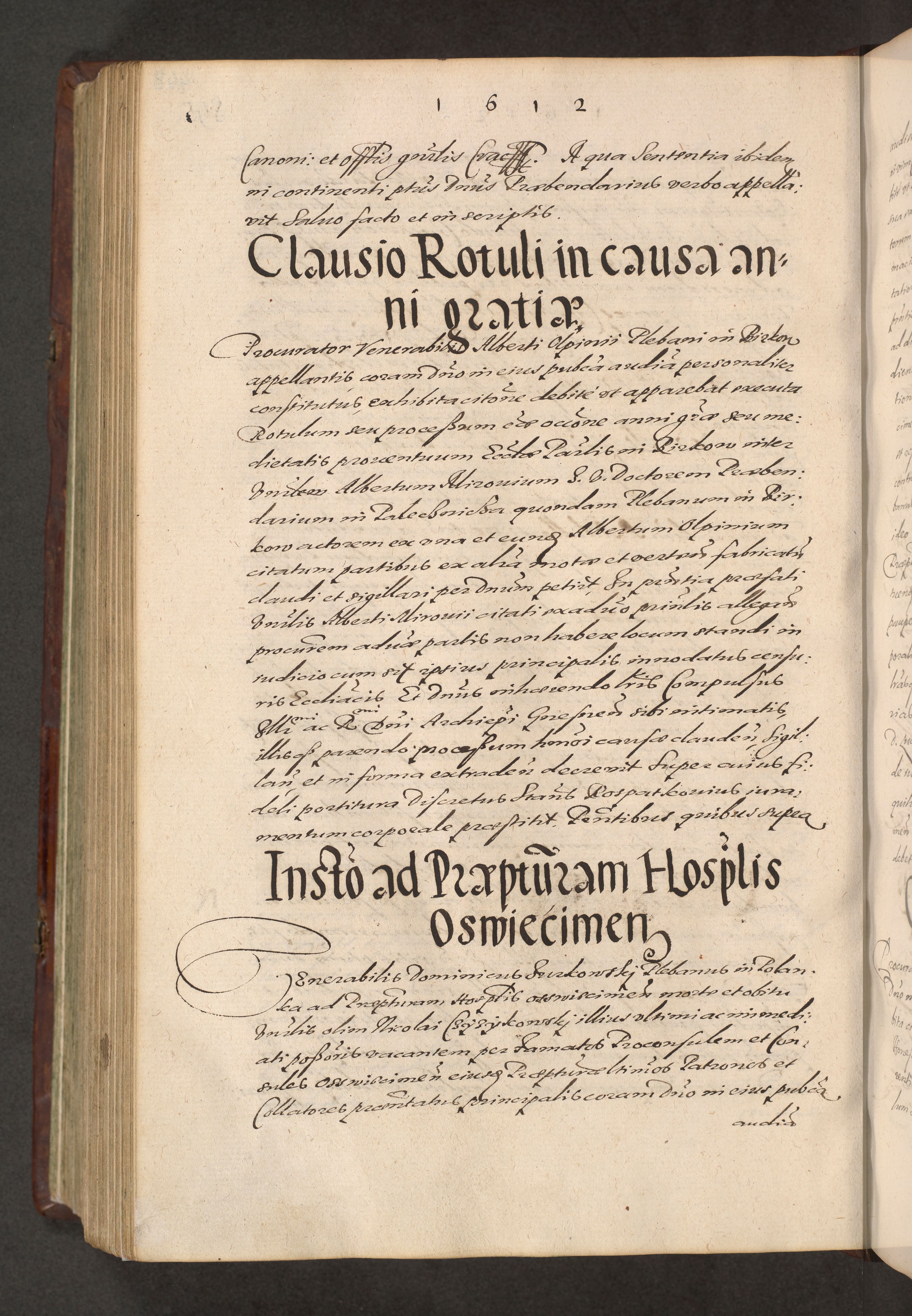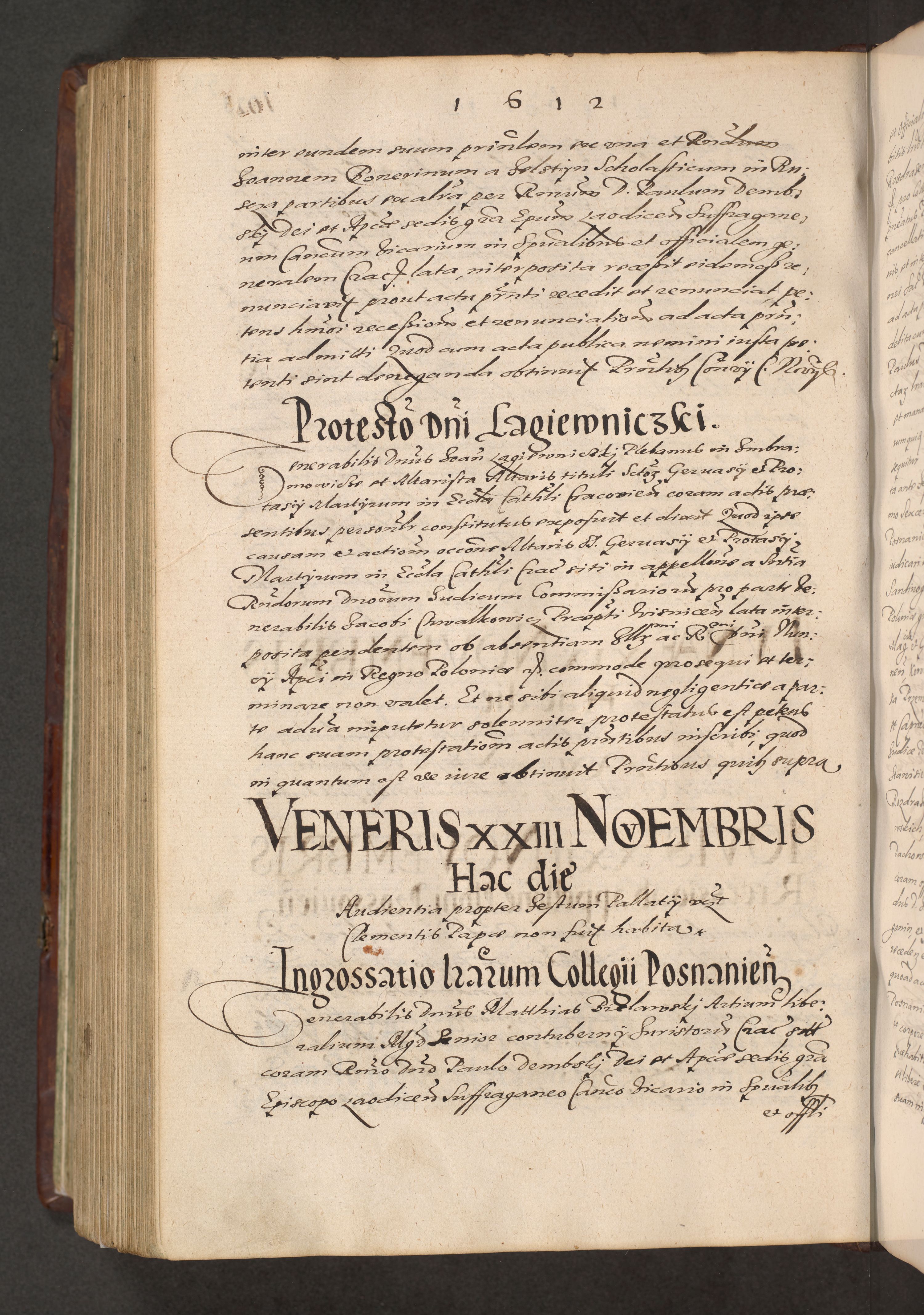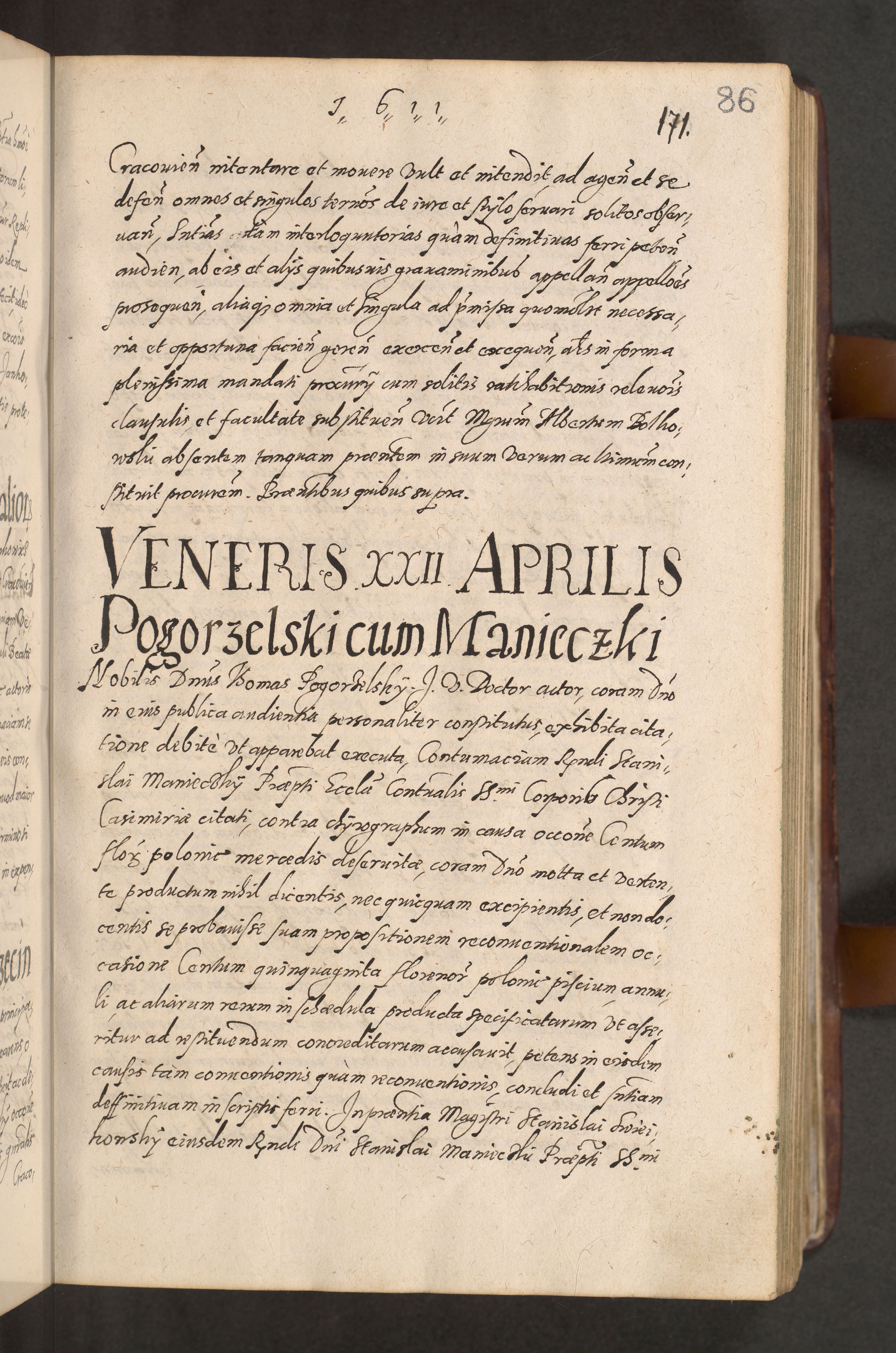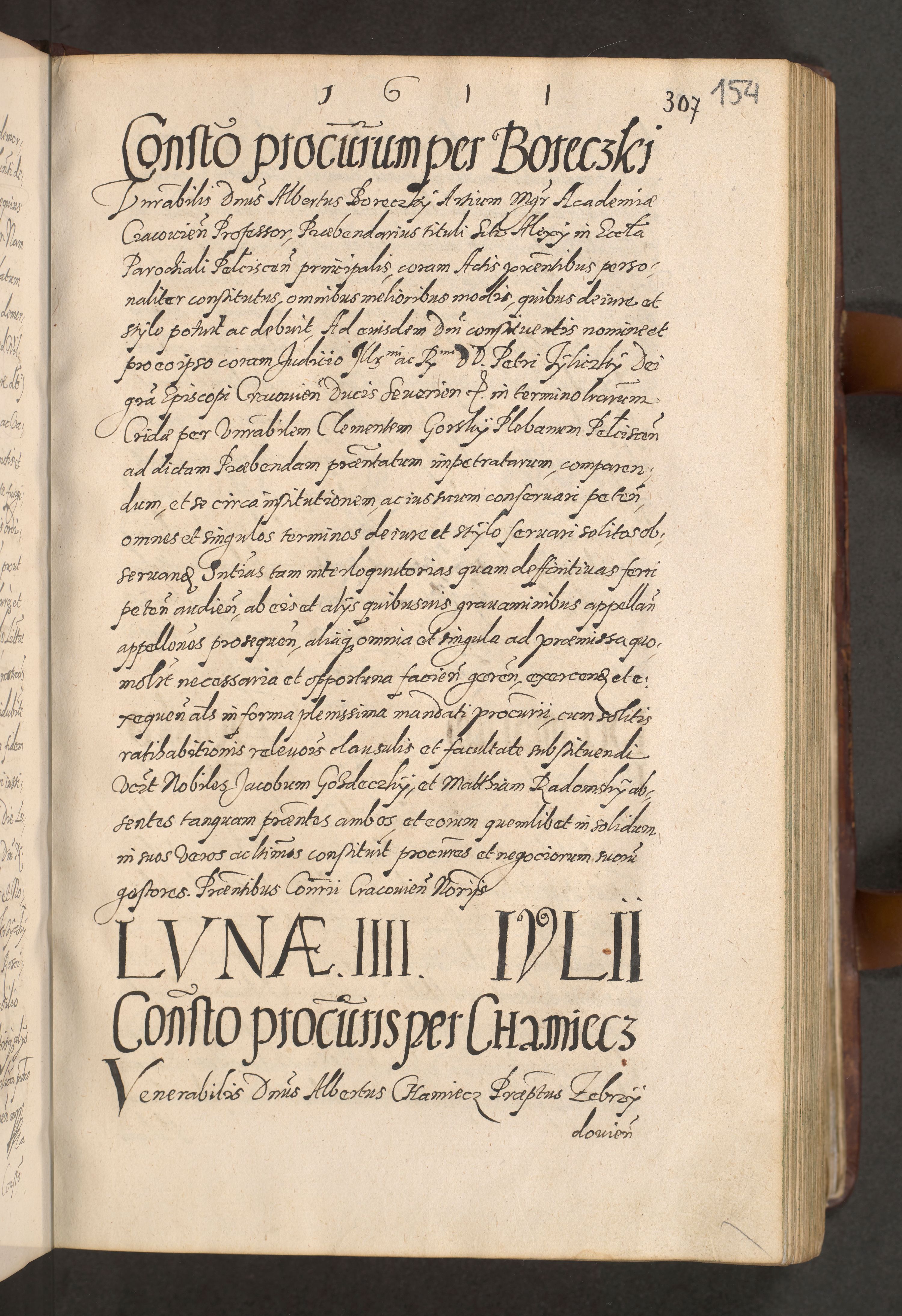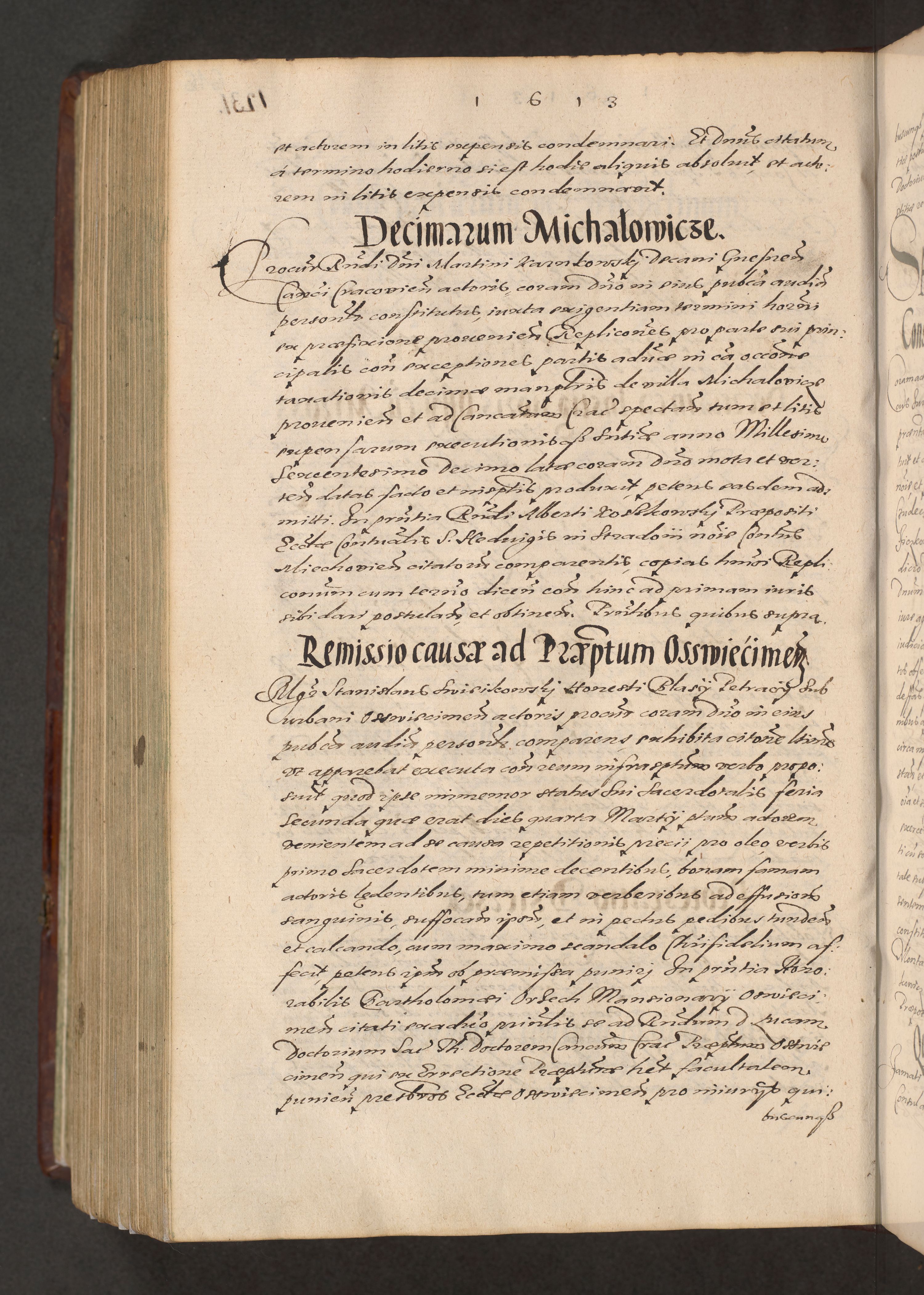 Acta actorum causarum sententiarum tam diffinitiuarum quam interloquutorisrum decretorum obligationum quietationum procuratorum constitutionum etc. etc. coram Reverendo Domino Paulo Dembski Dei et Apostolice Sedis Gratia Episcopalo Dicensis Suffraganeo Canonico Vicario in Spiritualibus et Officiali Generali Cracoviensis ad Annum Domini Millesimum Sexcentesimum Undecimum cuius indictio octava pontificatus Sanctissimi Domini Nostri Domini Pauli Divina Providentia Papae Vti foeliciter continuantur