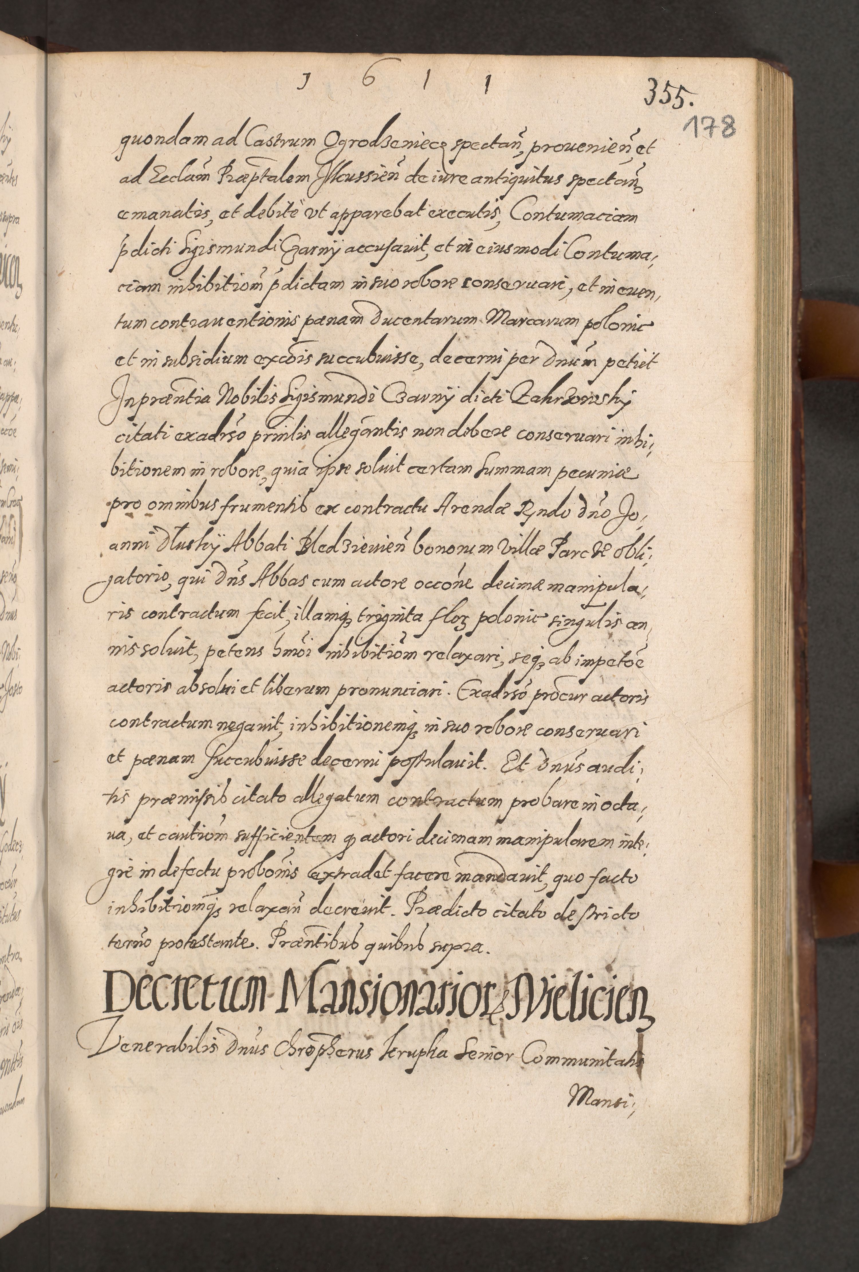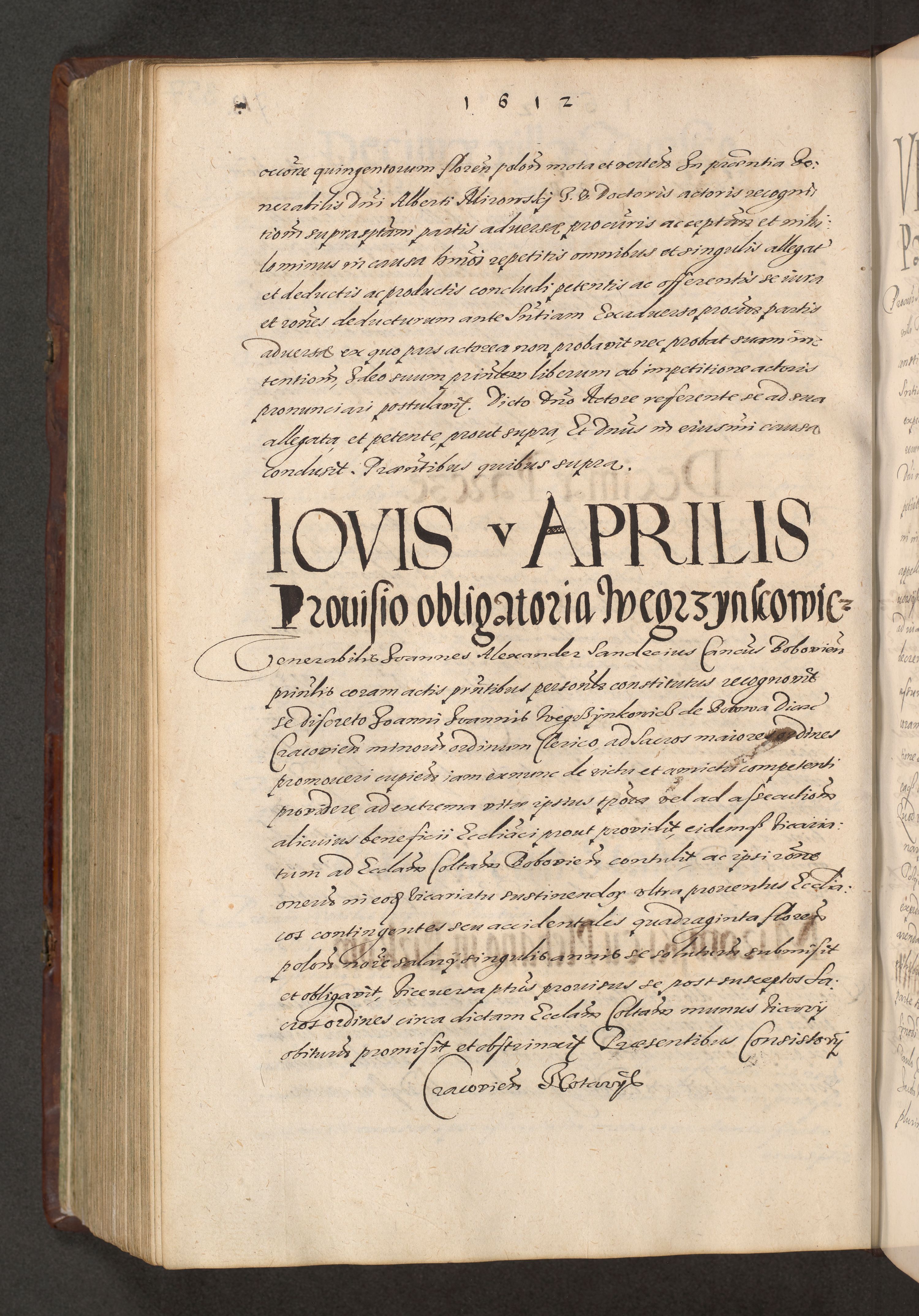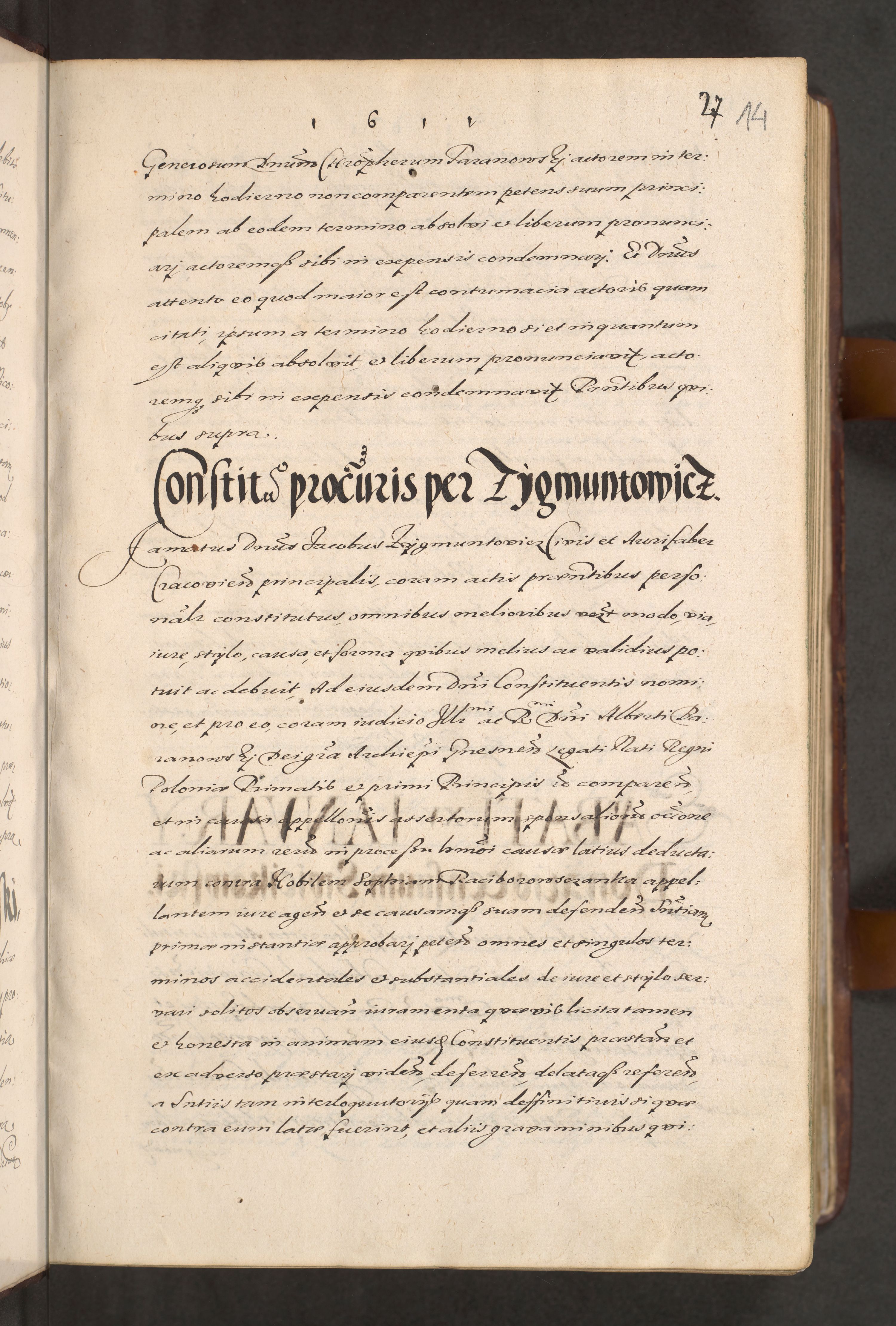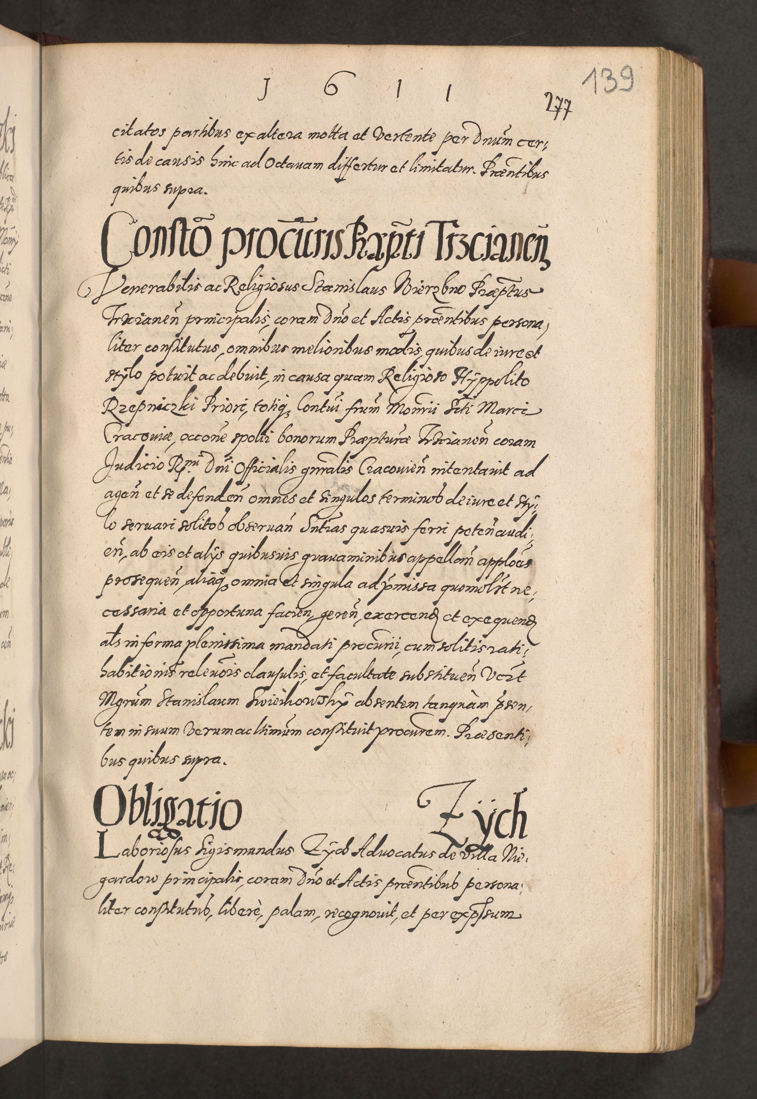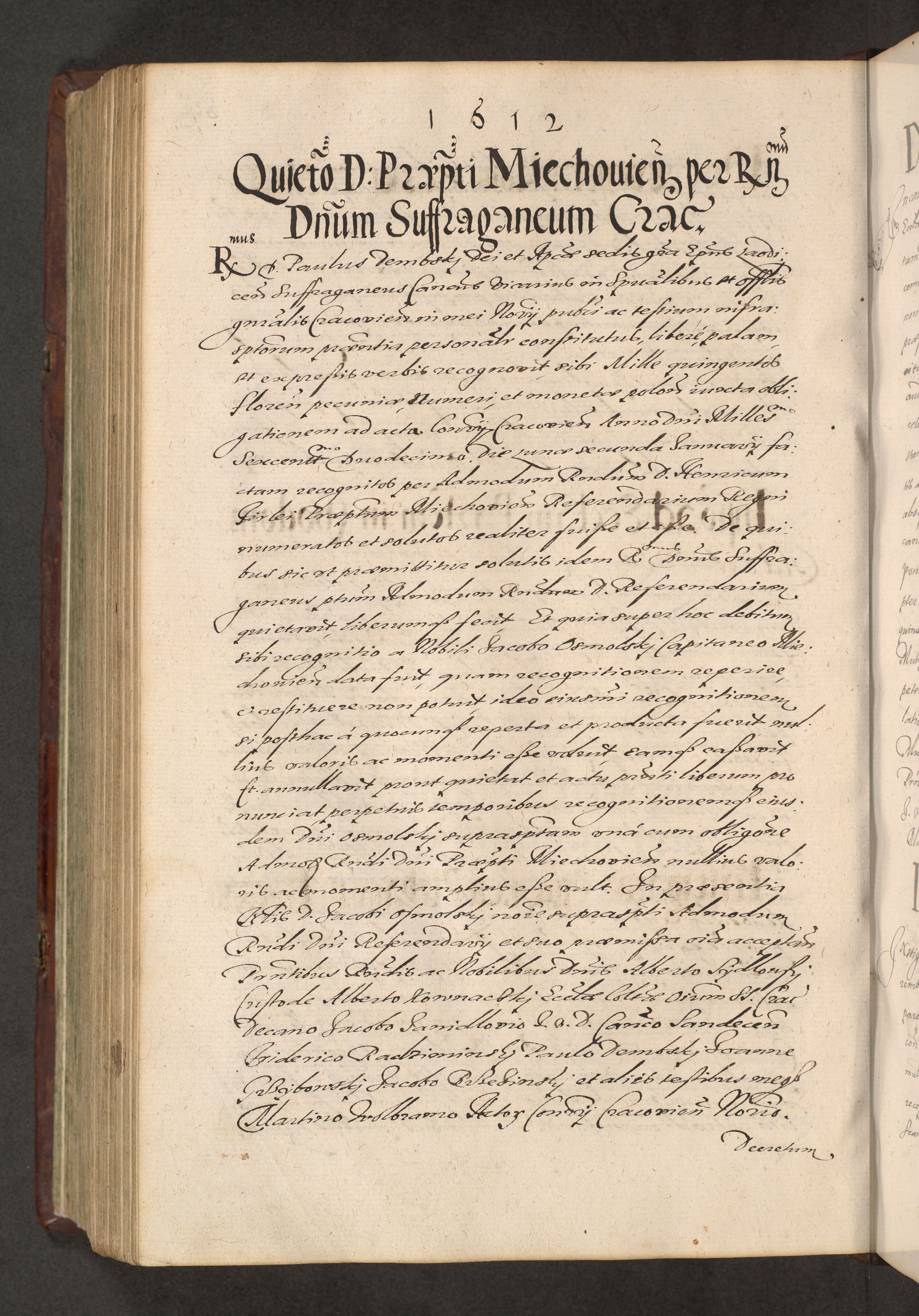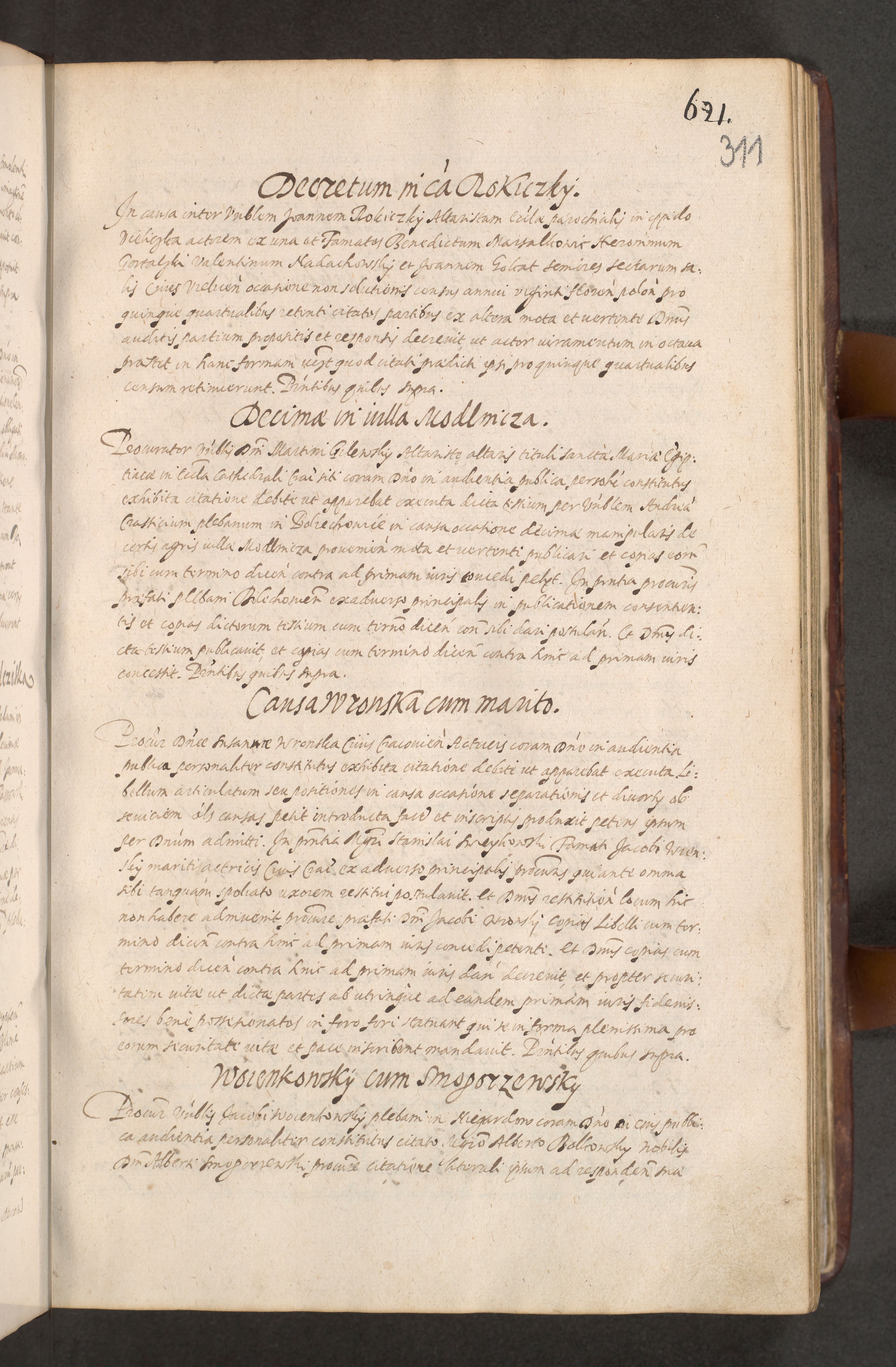 Acta actorum causarum sententiarum tam diffinitiuarum quam interloquutorisrum decretorum obligationum quietationum procuratorum constitutionum etc. etc. coram Reverendo Domino Paulo Dembski Dei et Apostolice Sedis Gratia Episcopalo Dicensis Suffraganeo Canonico Vicario in Spiritualibus et Officiali Generali Cracoviensis ad Annum Domini Millesimum Sexcentesimum Undecimum cuius indictio octava pontificatus Sanctissimi Domini Nostri Domini Pauli Divina Providentia Papae Vti foeliciter continuantur