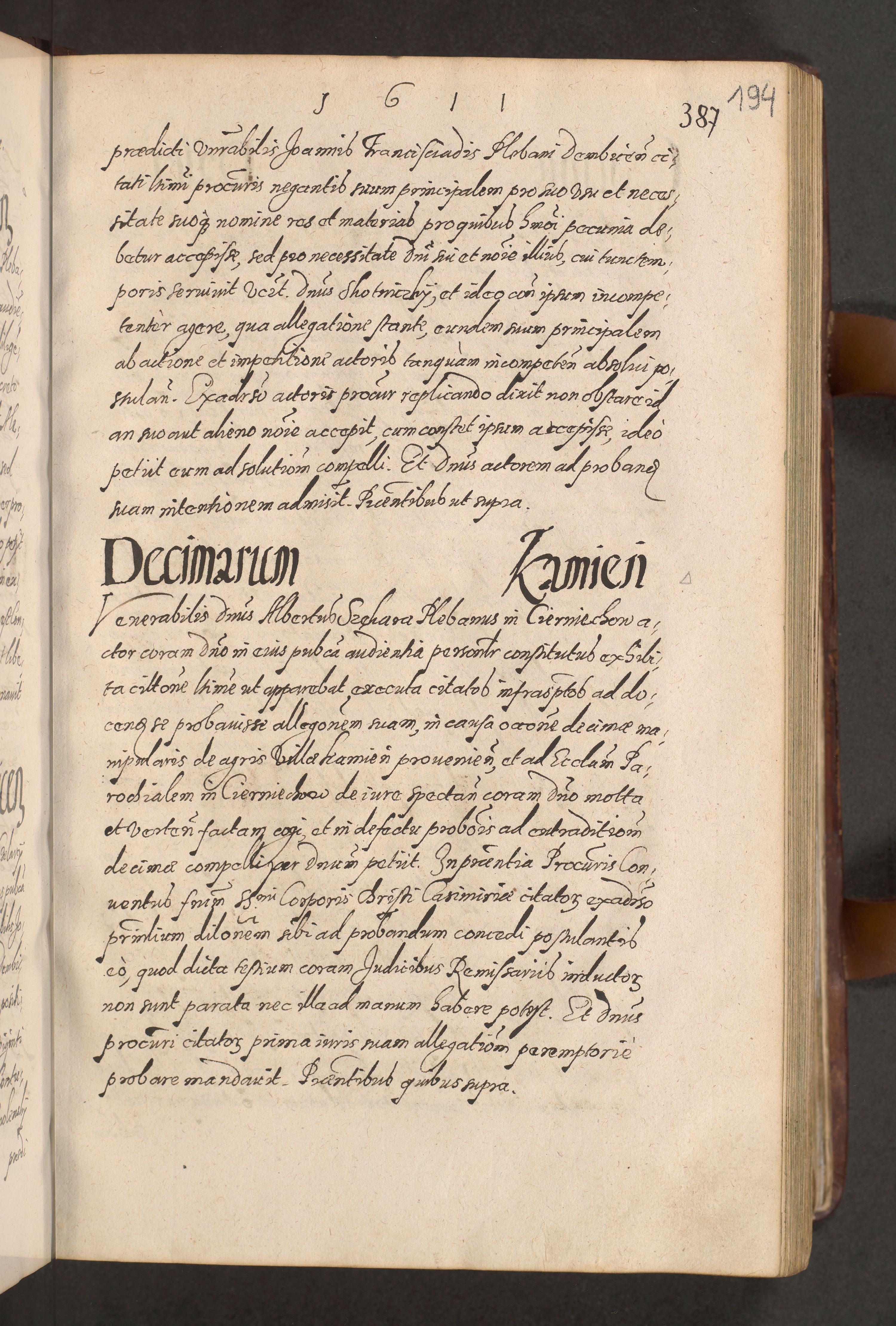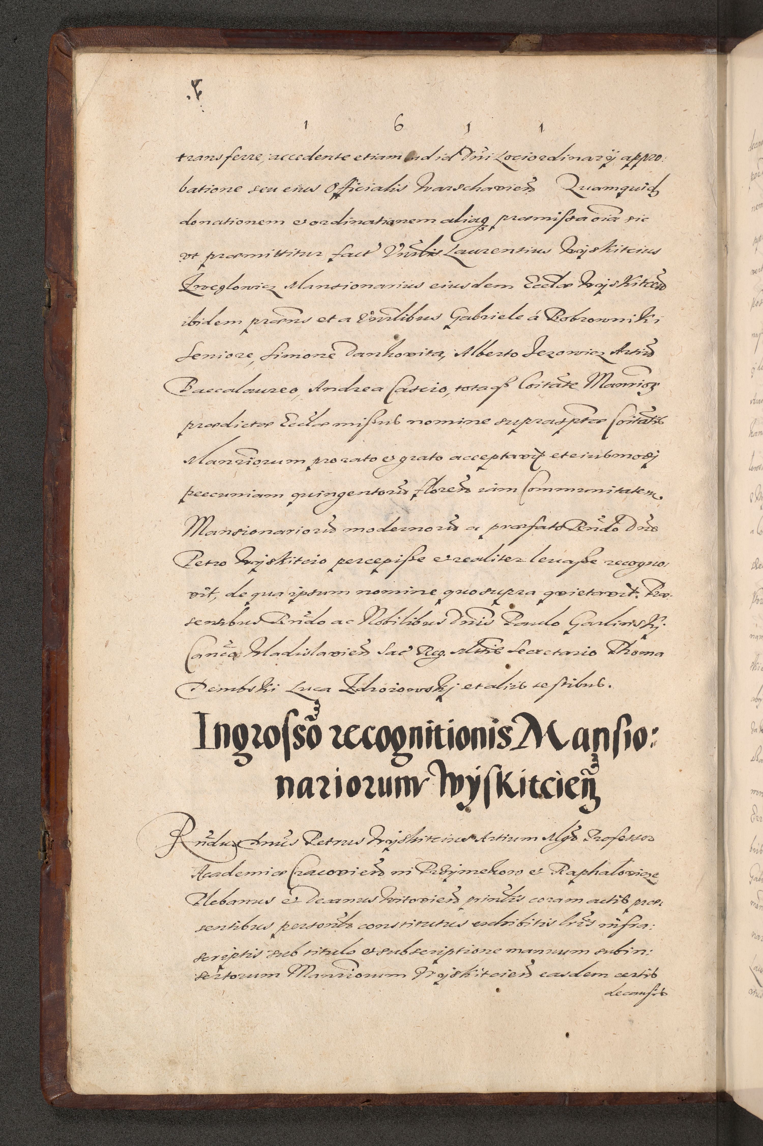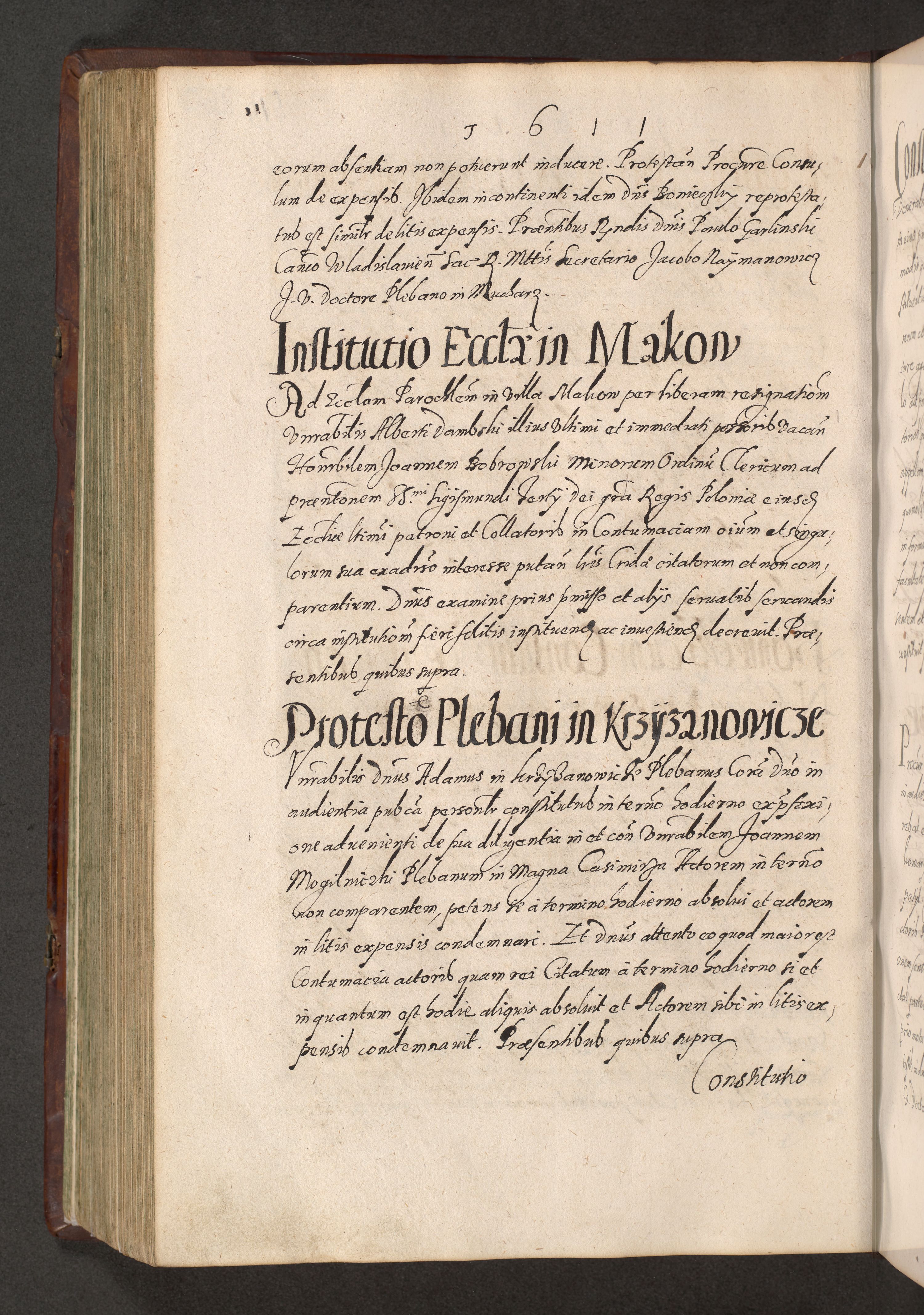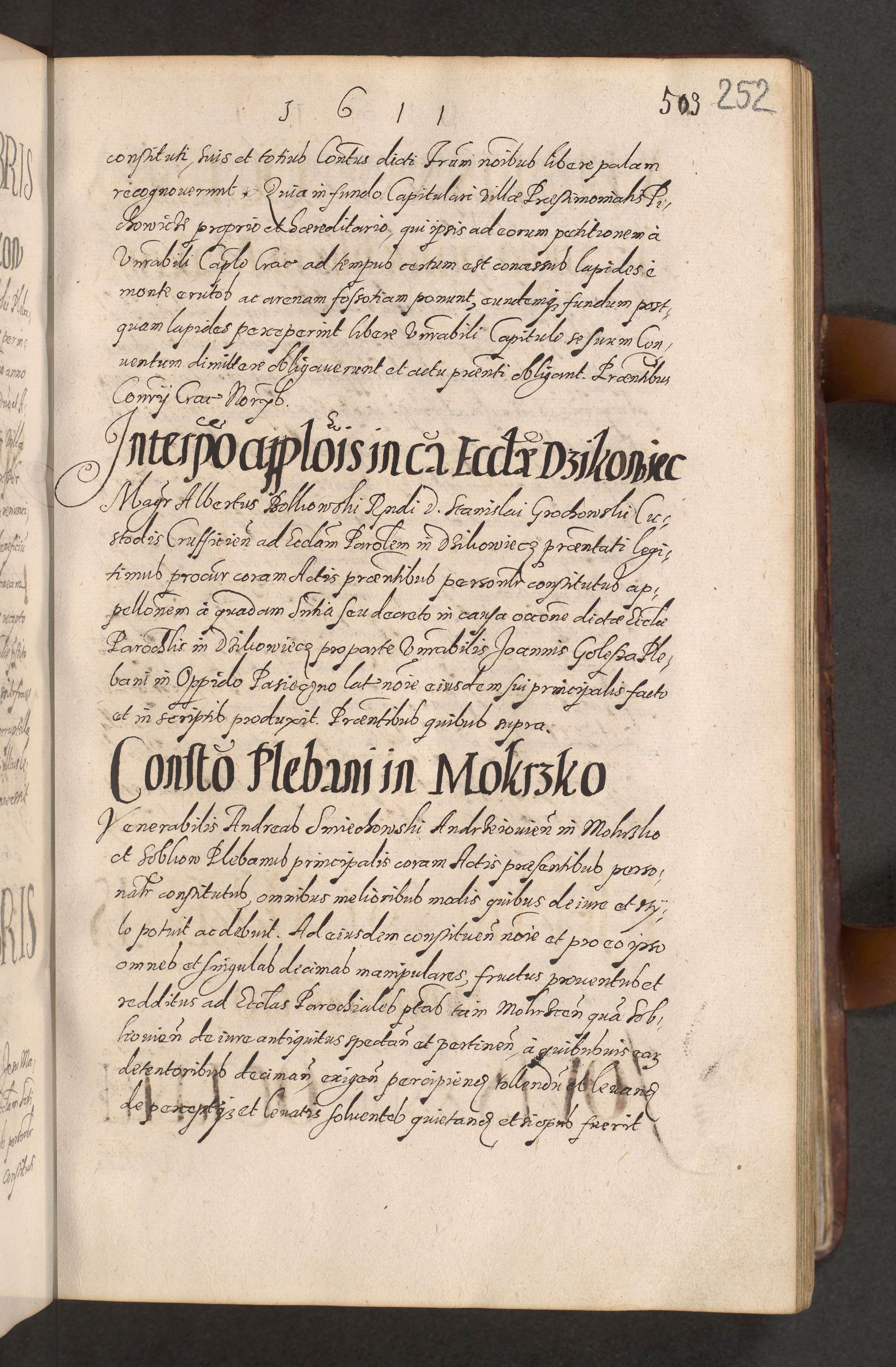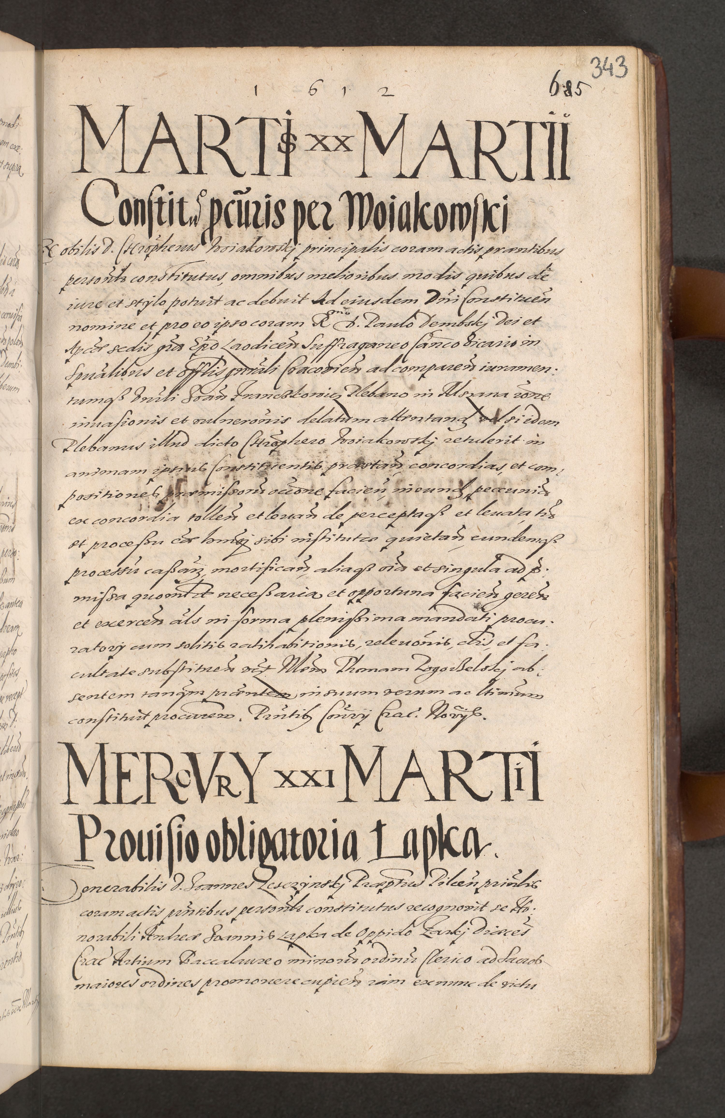 Acta actorum causarum sententiarum tam diffinitiuarum quam interloquutorisrum decretorum obligationum quietationum procuratorum constitutionum etc. etc. coram Reverendo Domino Paulo Dembski Dei et Apostolice Sedis Gratia Episcopalo Dicensis Suffraganeo Canonico Vicario in Spiritualibus et Officiali Generali Cracoviensis ad Annum Domini Millesimum Sexcentesimum Undecimum cuius indictio octava pontificatus Sanctissimi Domini Nostri Domini Pauli Divina Providentia Papae Vti foeliciter continuantur