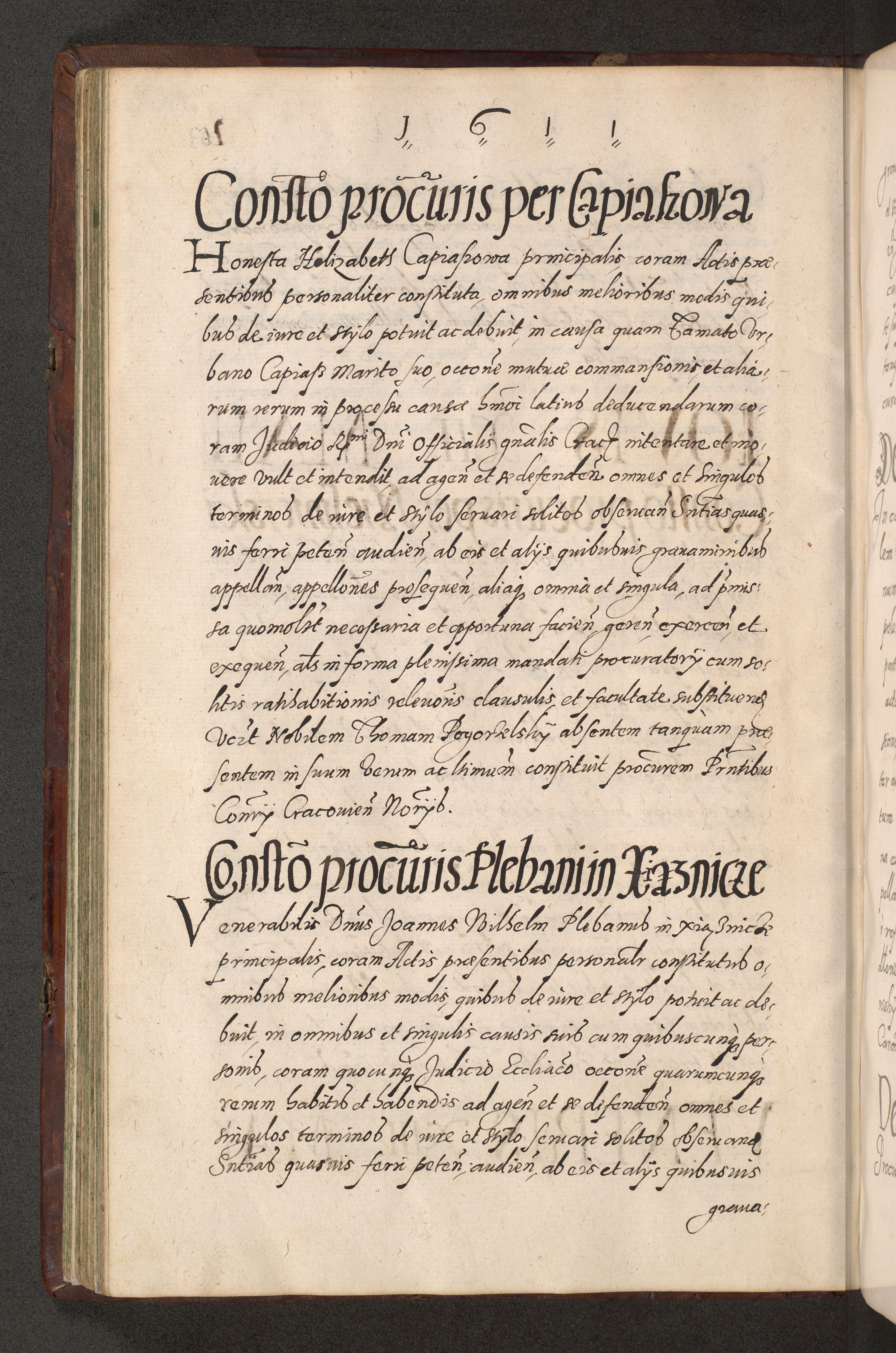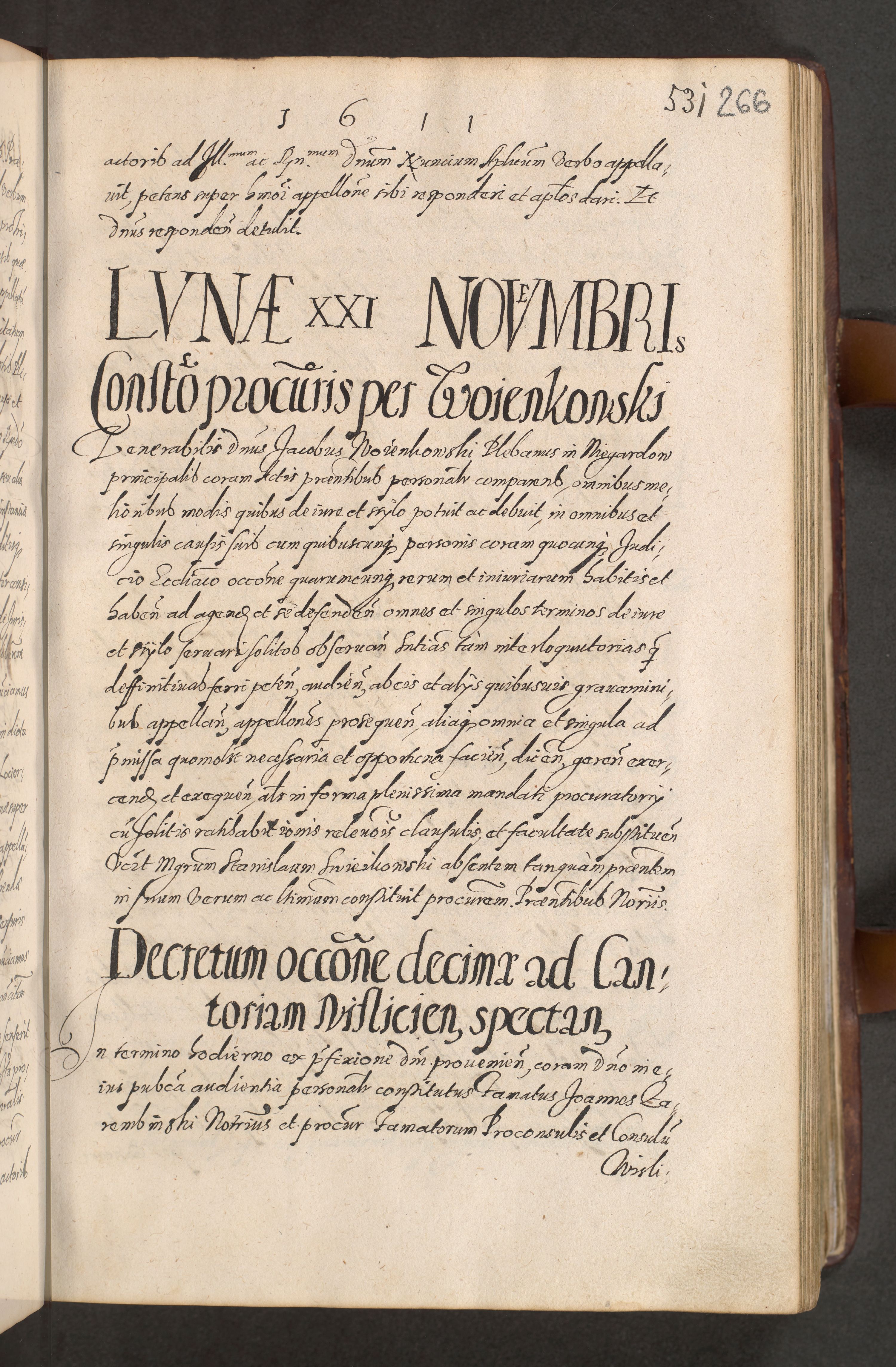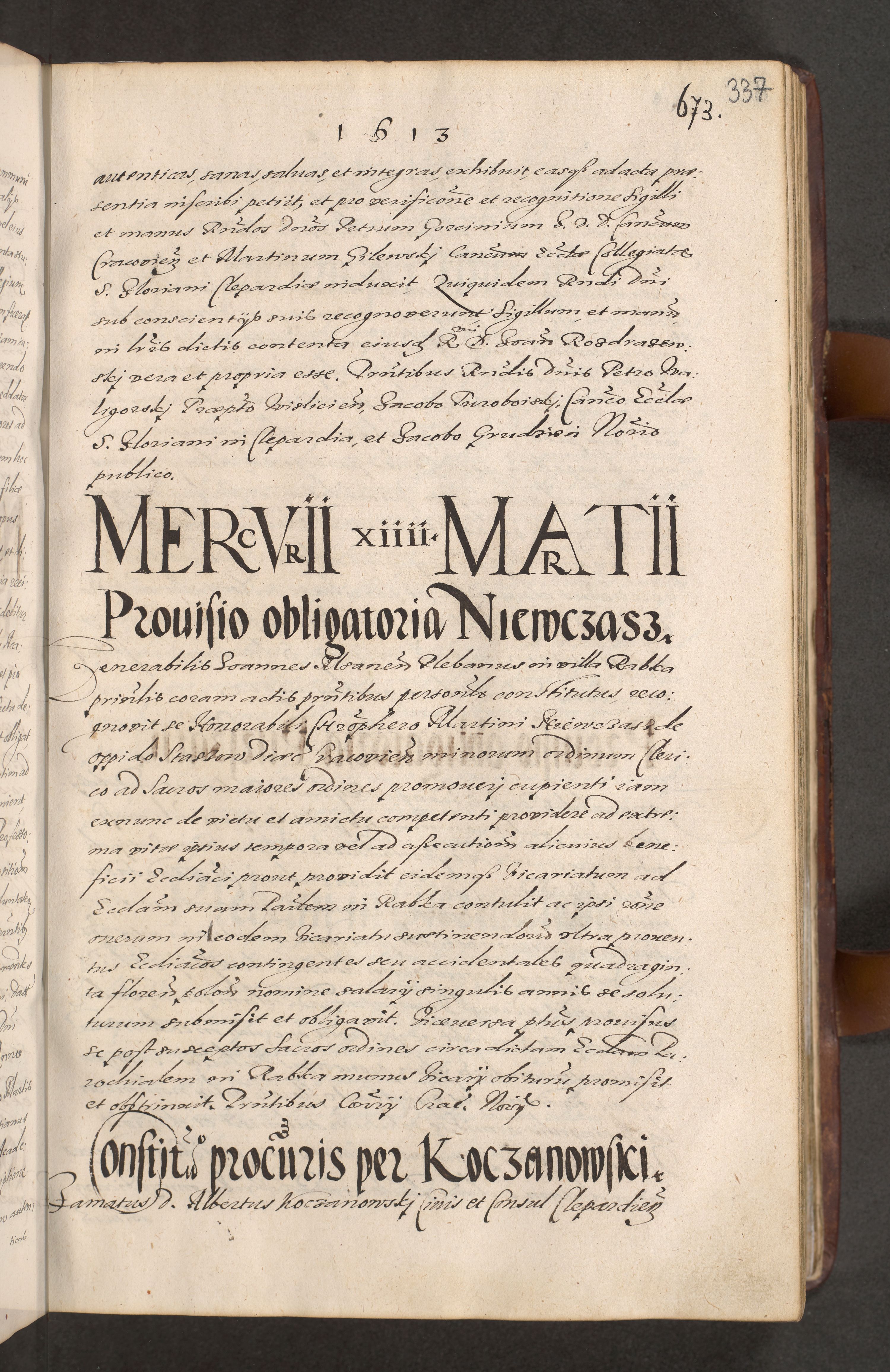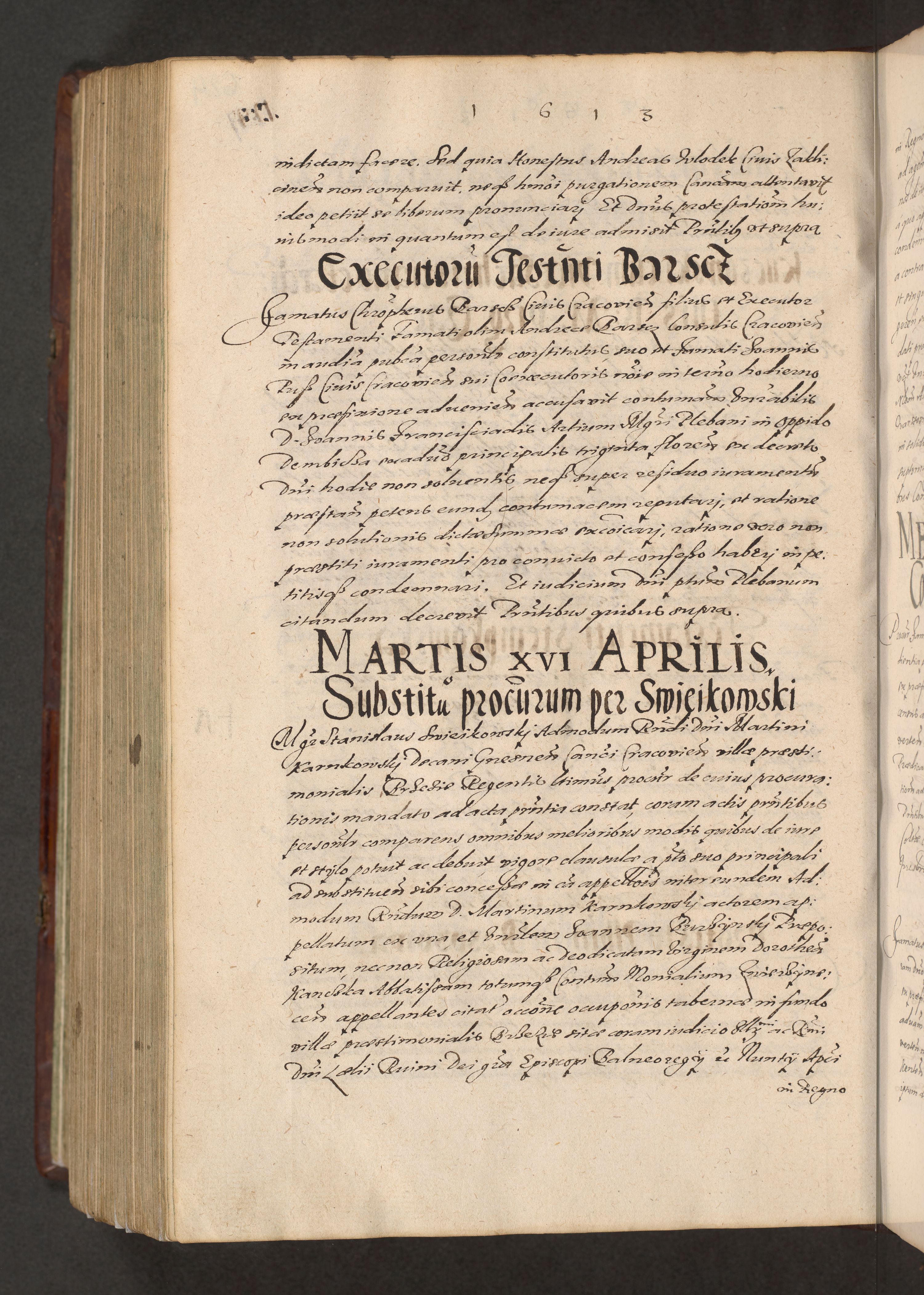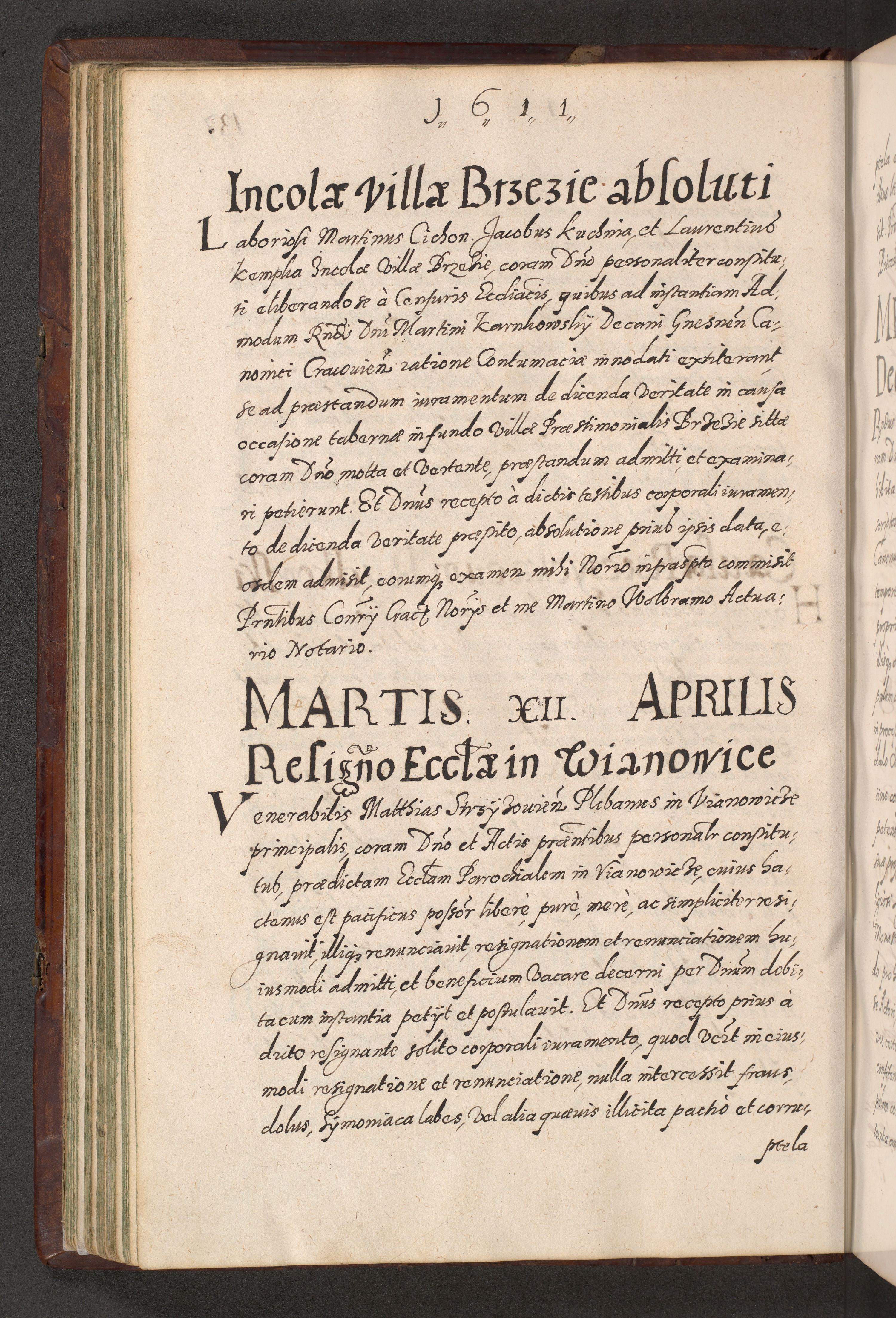 Acta actorum causarum sententiarum tam diffinitiuarum quam interloquutorisrum decretorum obligationum quietationum procuratorum constitutionum etc. etc. coram Reverendo Domino Paulo Dembski Dei et Apostolice Sedis Gratia Episcopalo Dicensis Suffraganeo Canonico Vicario in Spiritualibus et Officiali Generali Cracoviensis ad Annum Domini Millesimum Sexcentesimum Undecimum cuius indictio octava pontificatus Sanctissimi Domini Nostri Domini Pauli Divina Providentia Papae Vti foeliciter continuantur