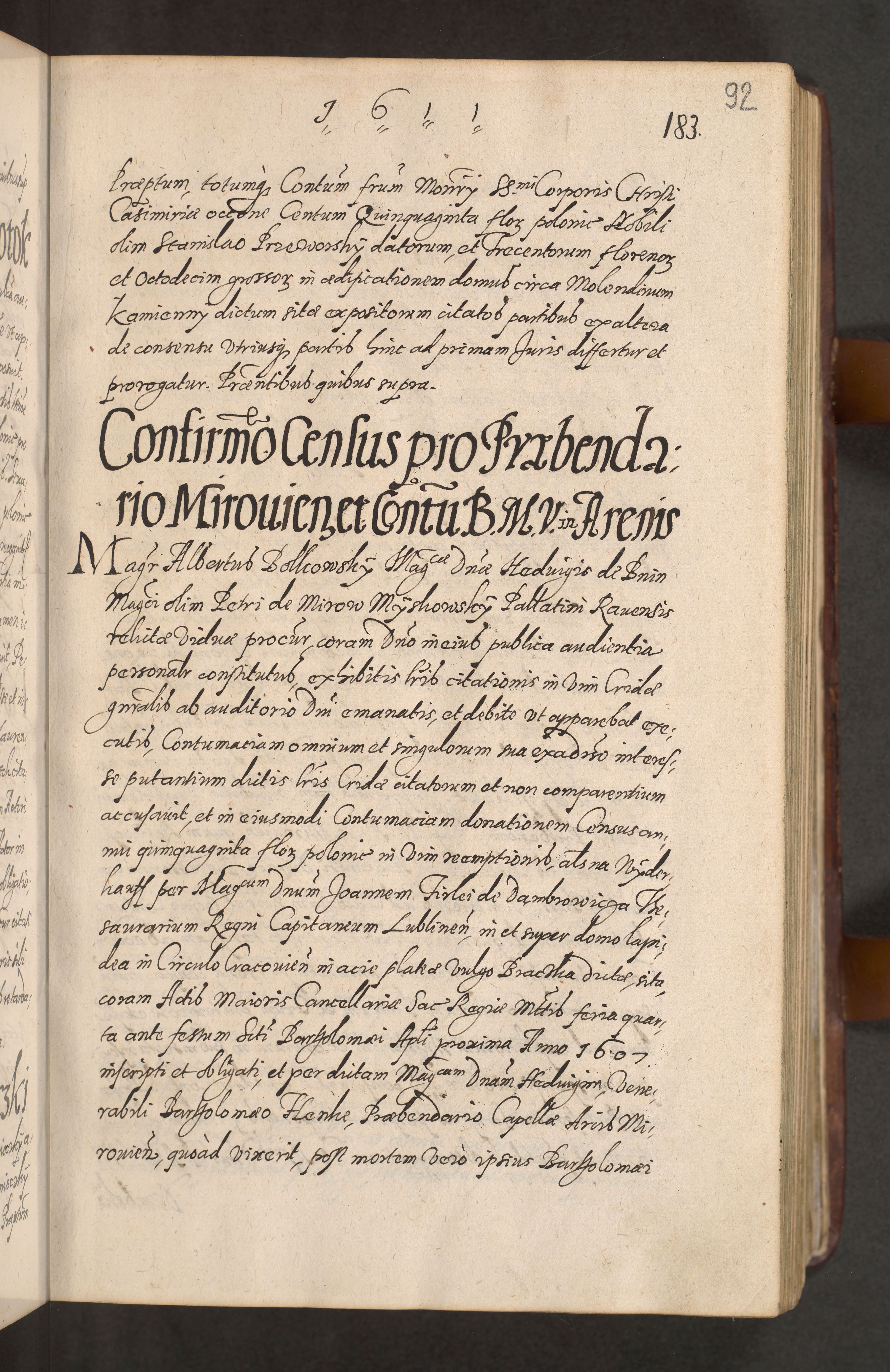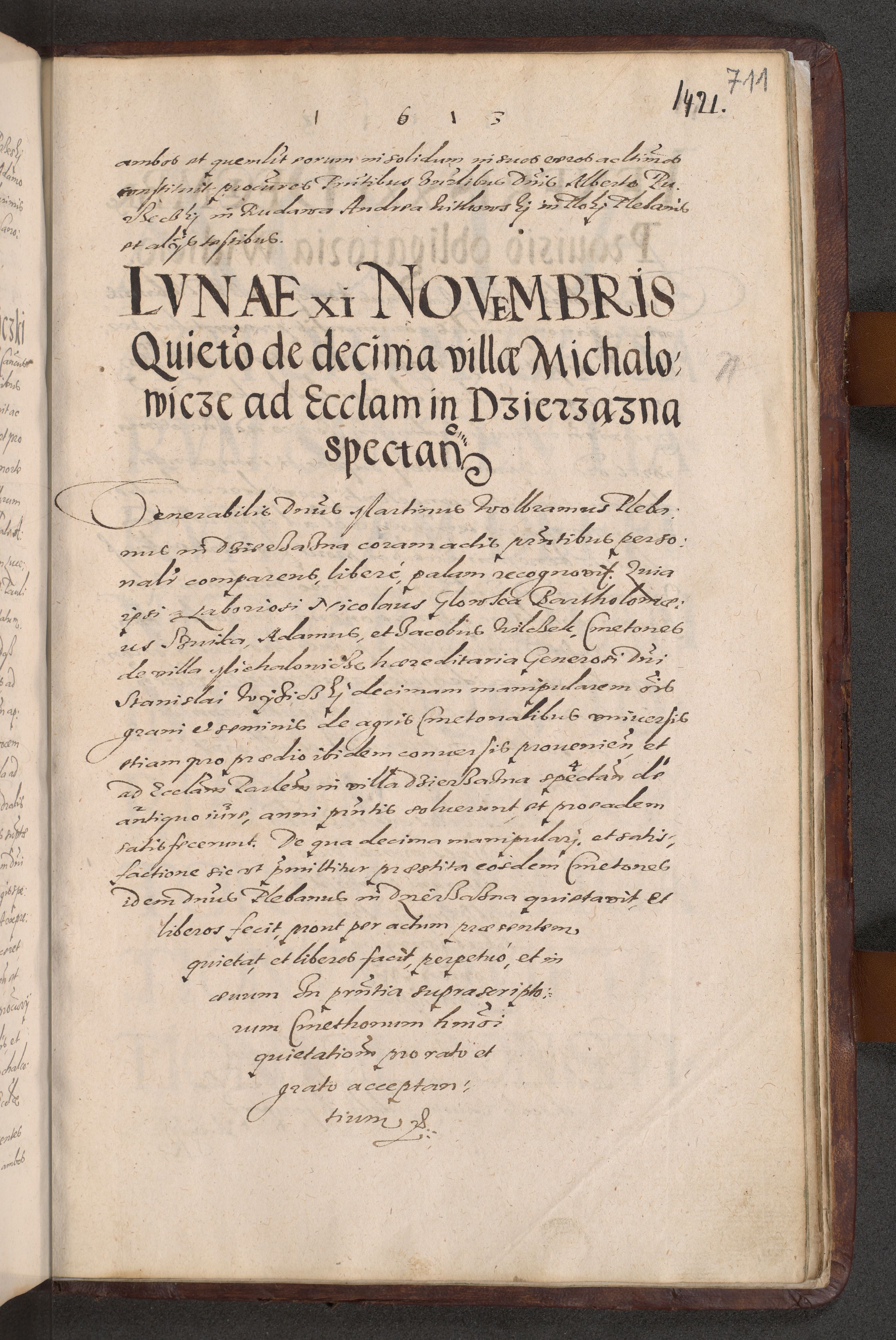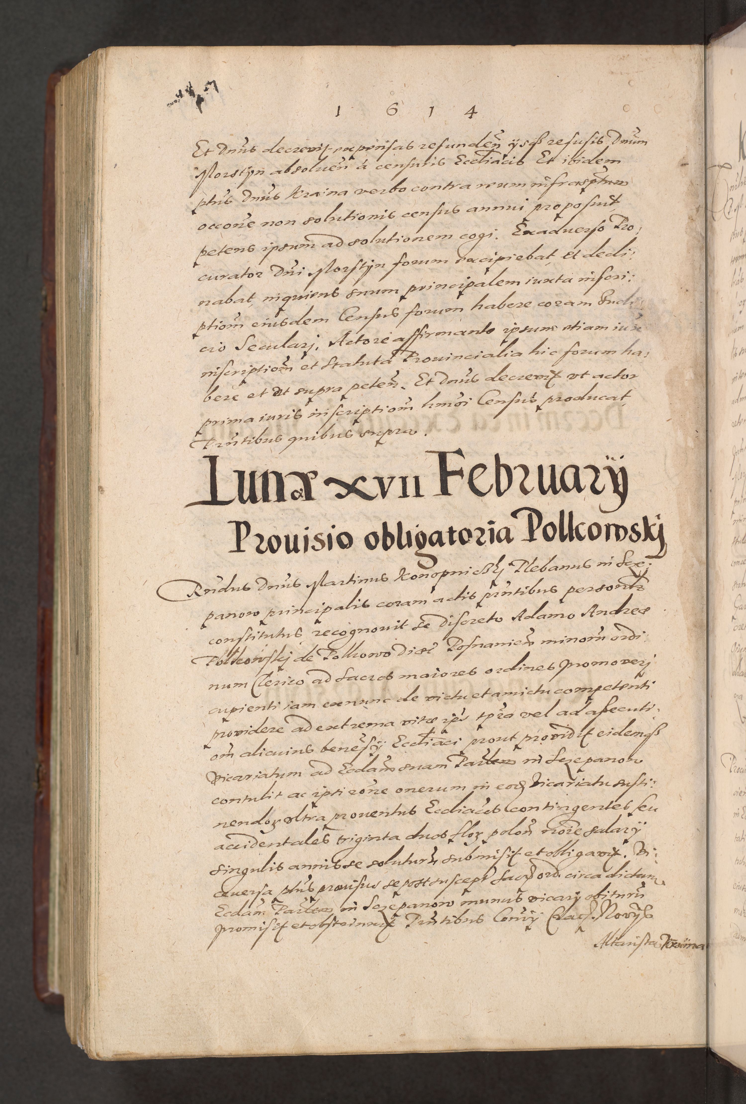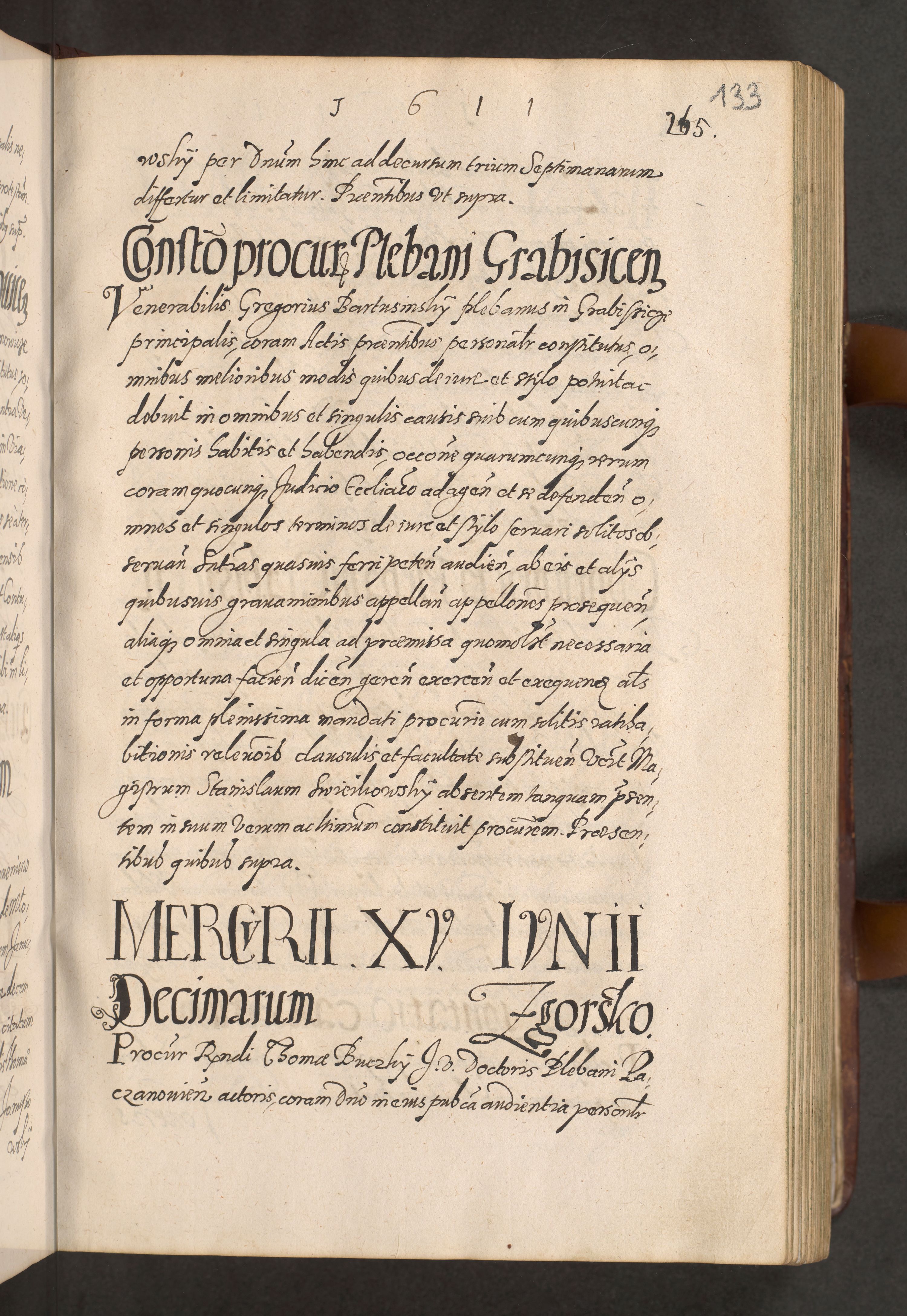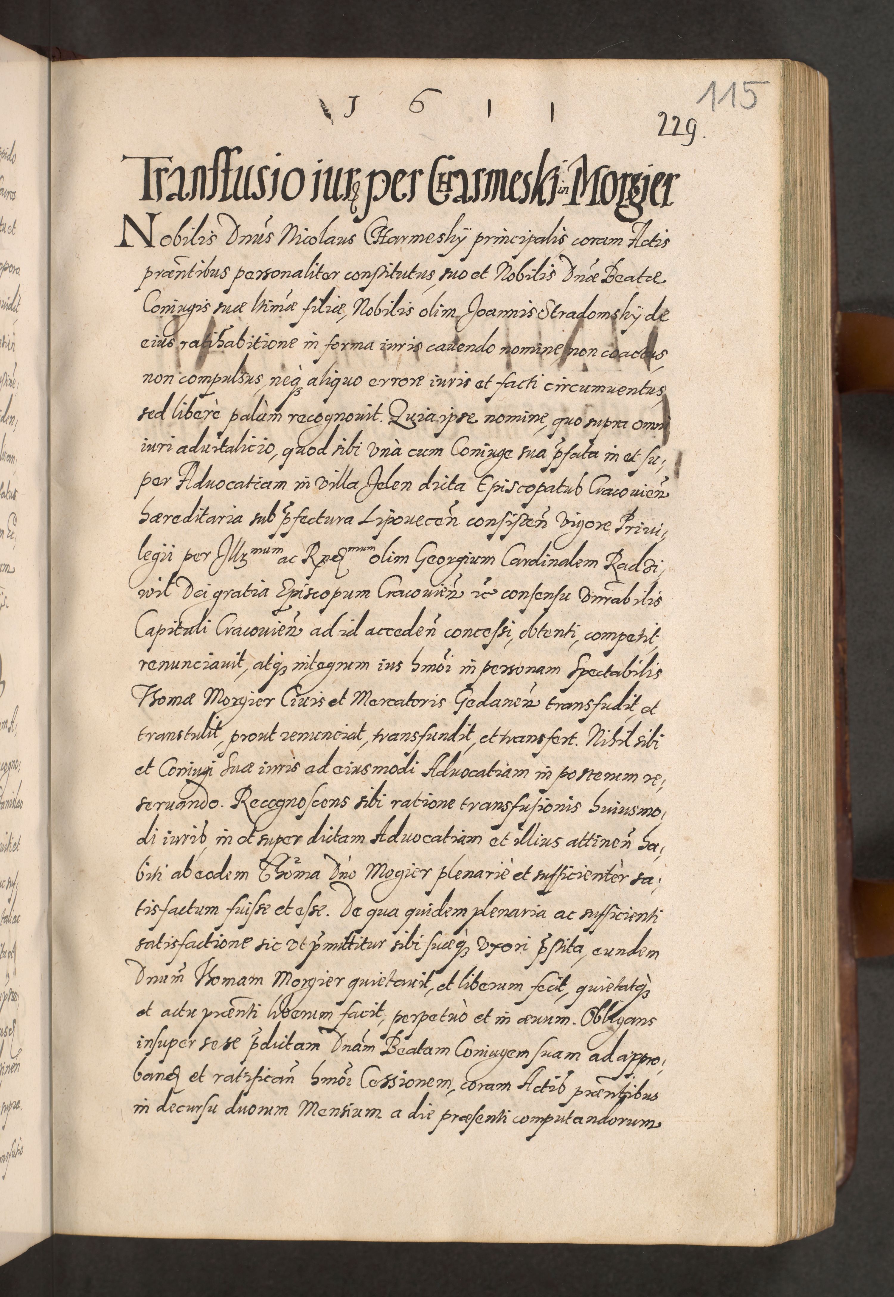 Acta actorum causarum sententiarum tam diffinitiuarum quam interloquutorisrum decretorum obligationum quietationum procuratorum constitutionum etc. etc. coram Reverendo Domino Paulo Dembski Dei et Apostolice Sedis Gratia Episcopalo Dicensis Suffraganeo Canonico Vicario in Spiritualibus et Officiali Generali Cracoviensis ad Annum Domini Millesimum Sexcentesimum Undecimum cuius indictio octava pontificatus Sanctissimi Domini Nostri Domini Pauli Divina Providentia Papae Vti foeliciter continuantur