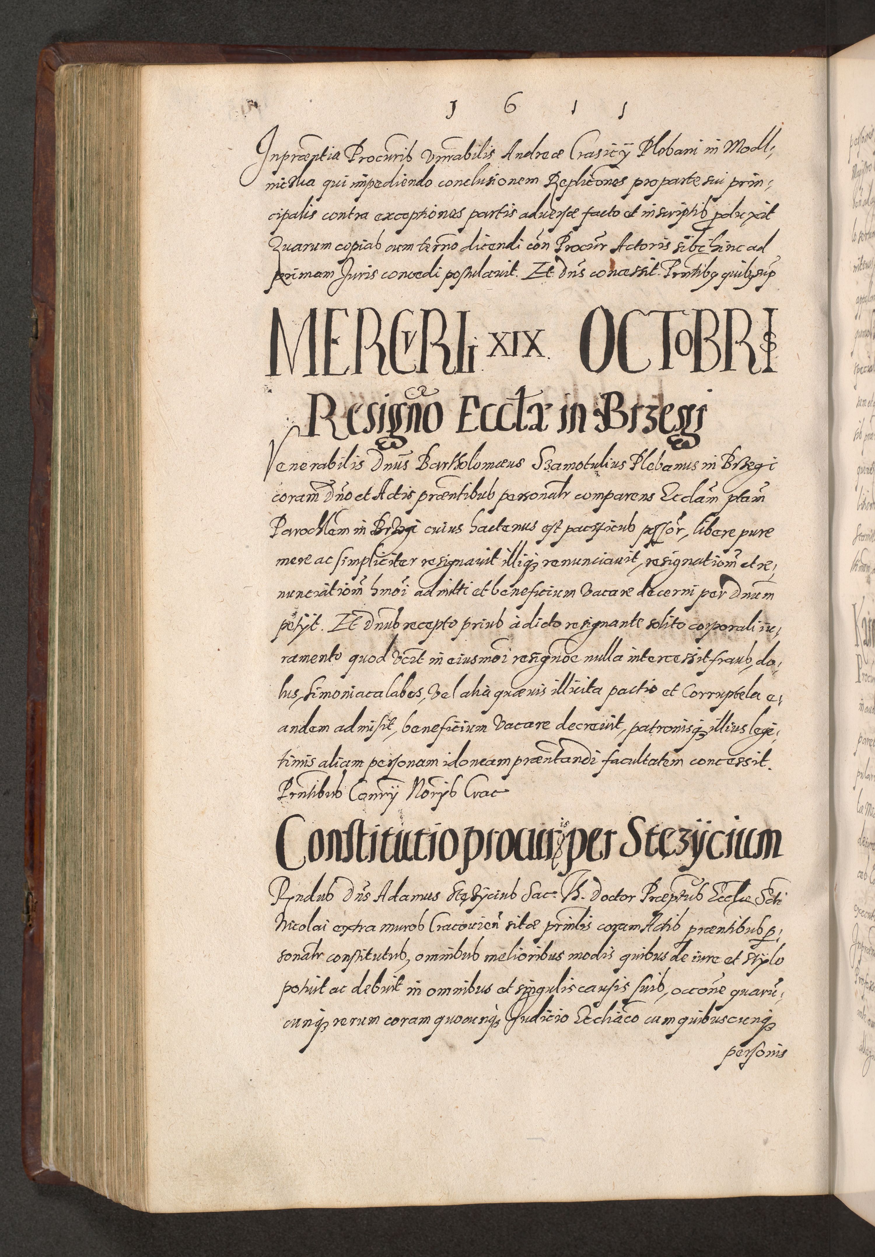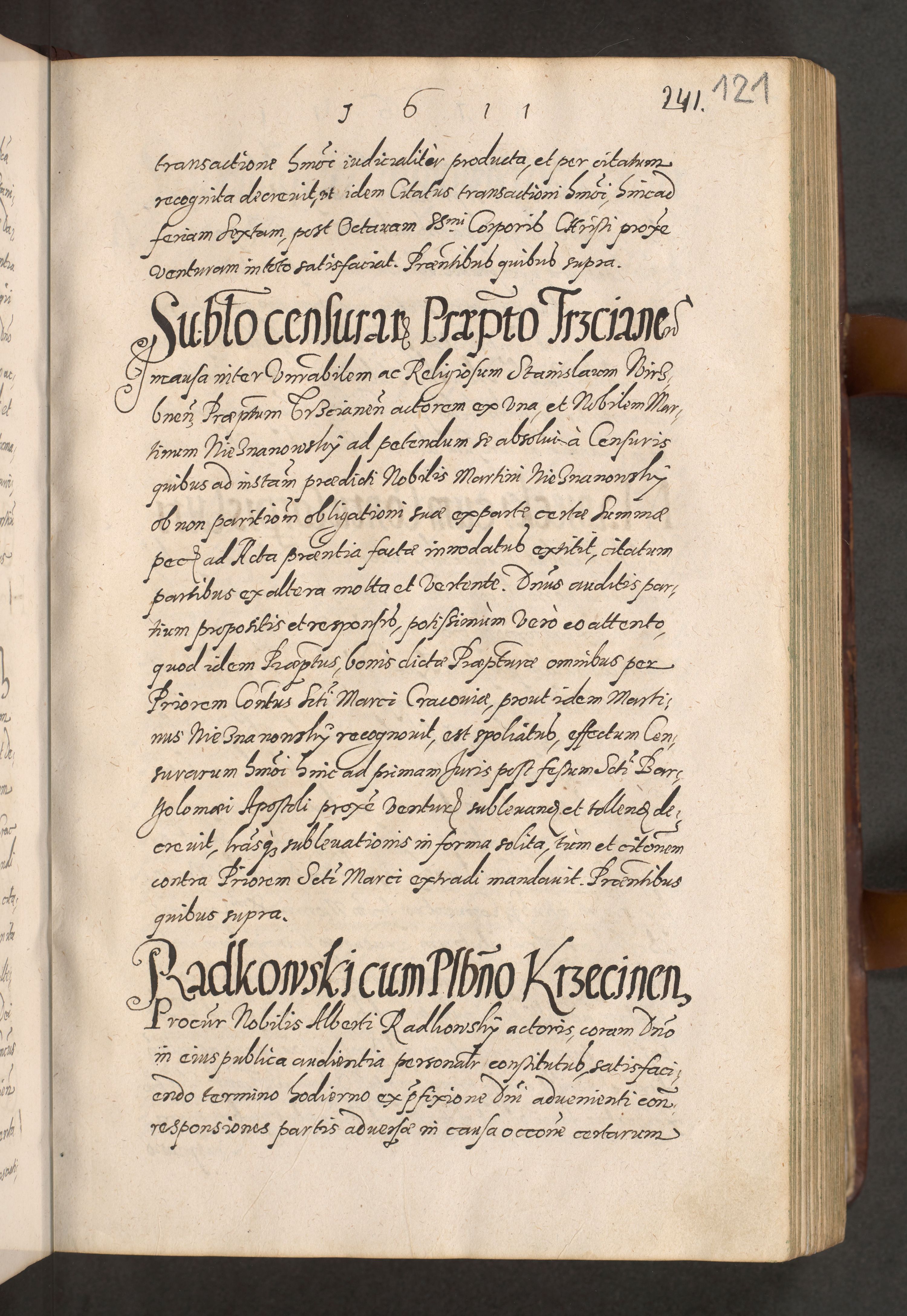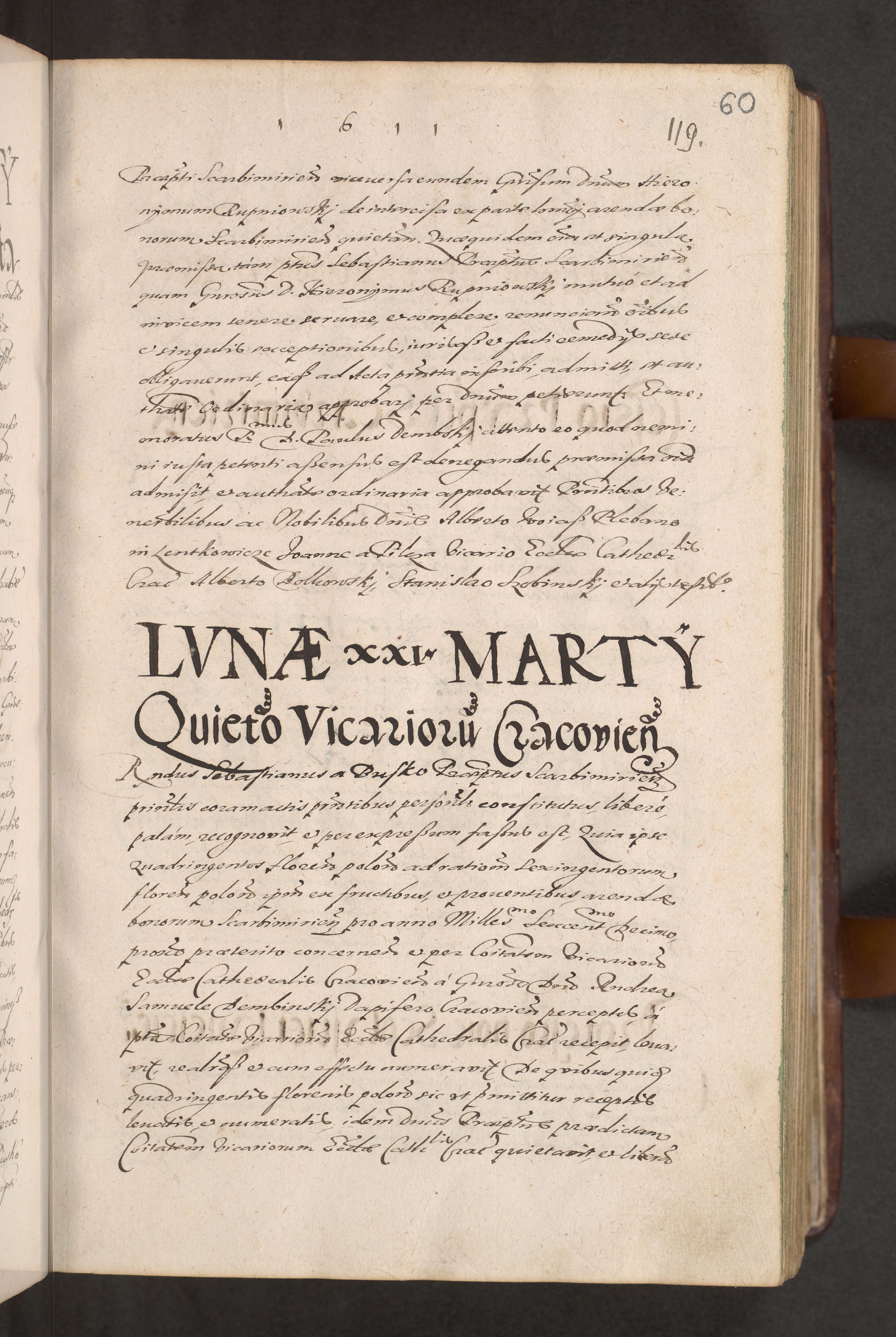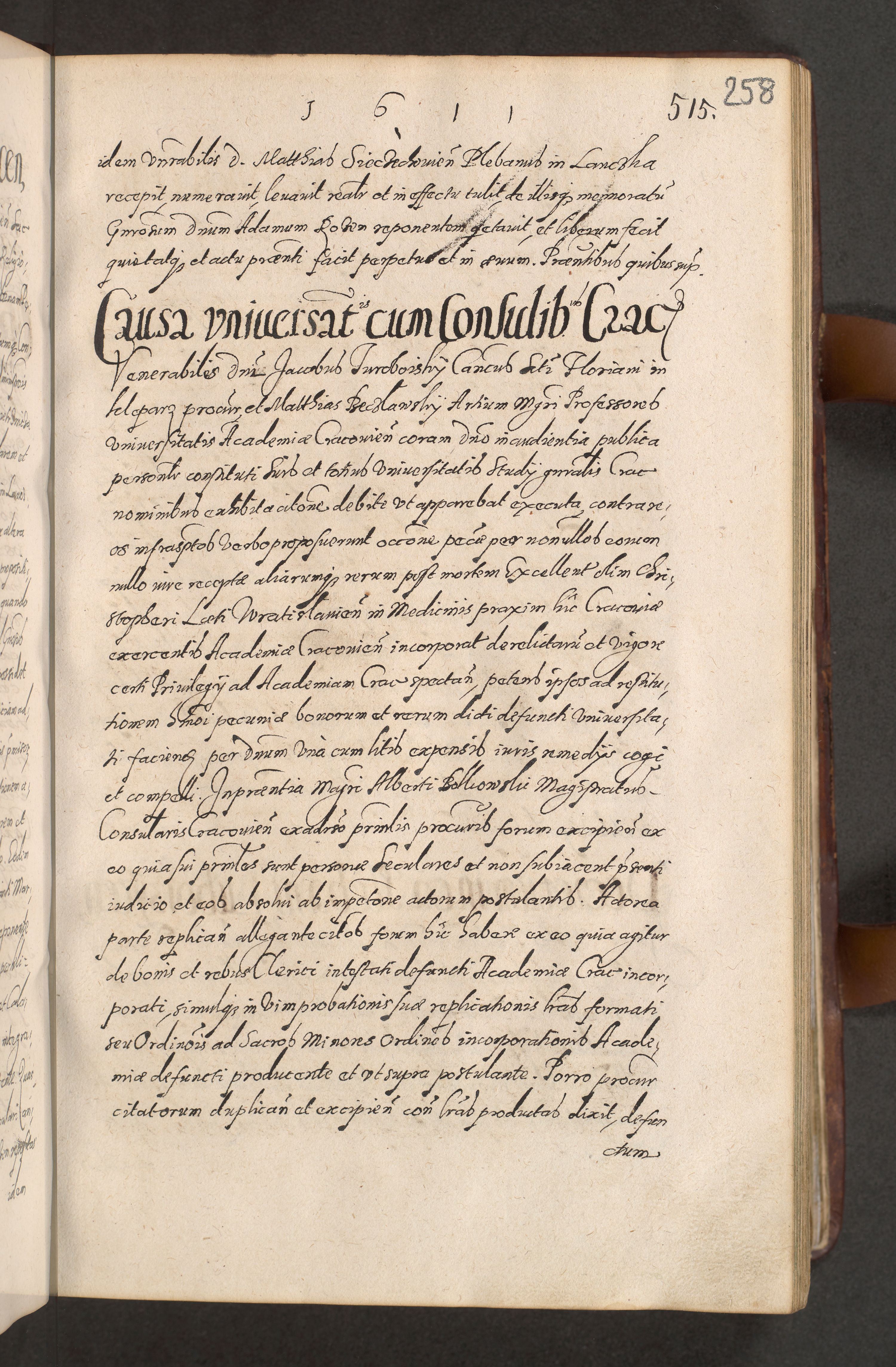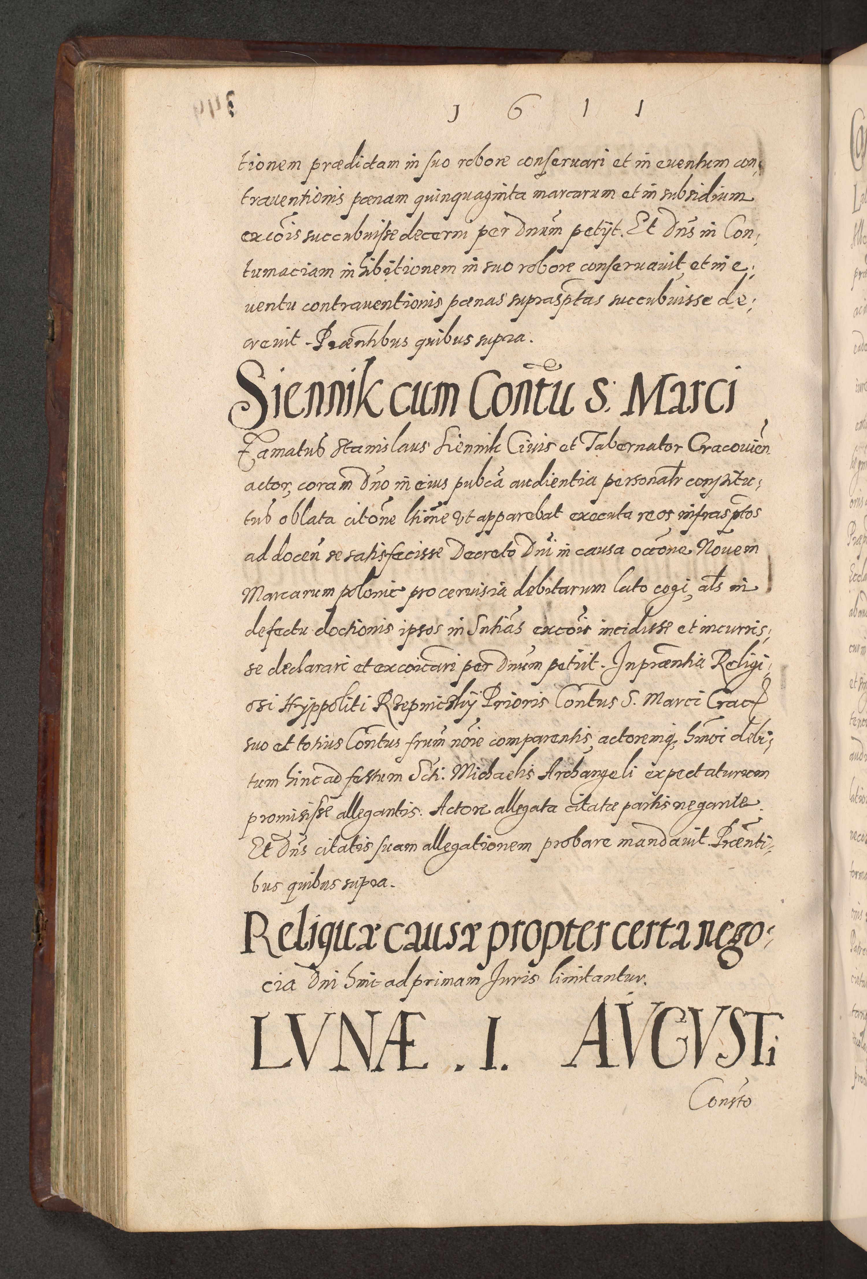 Acta actorum causarum sententiarum tam diffinitiuarum quam interloquutorisrum decretorum obligationum quietationum procuratorum constitutionum etc. etc. coram Reverendo Domino Paulo Dembski Dei et Apostolice Sedis Gratia Episcopalo Dicensis Suffraganeo Canonico Vicario in Spiritualibus et Officiali Generali Cracoviensis ad Annum Domini Millesimum Sexcentesimum Undecimum cuius indictio octava pontificatus Sanctissimi Domini Nostri Domini Pauli Divina Providentia Papae Vti foeliciter continuantur