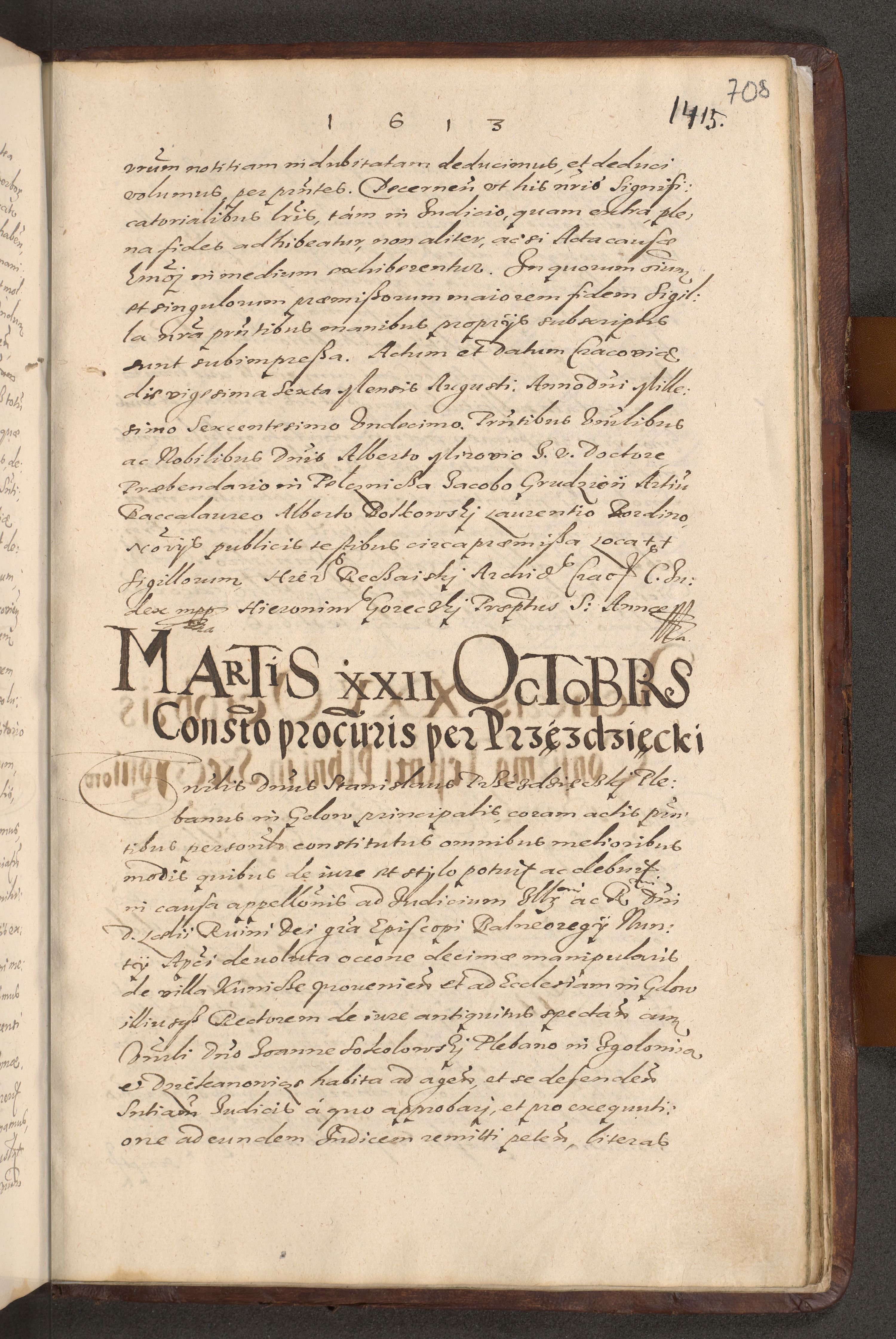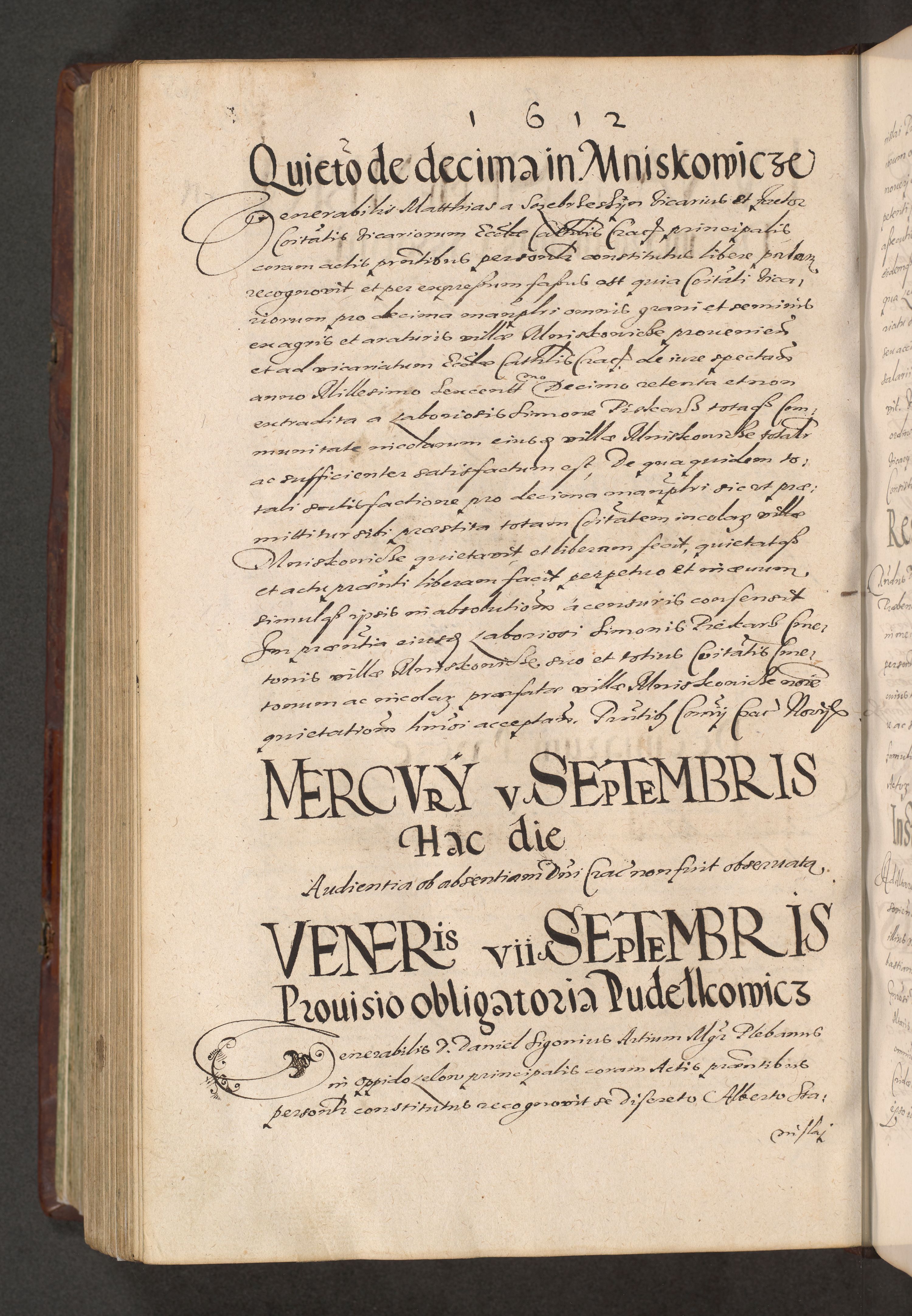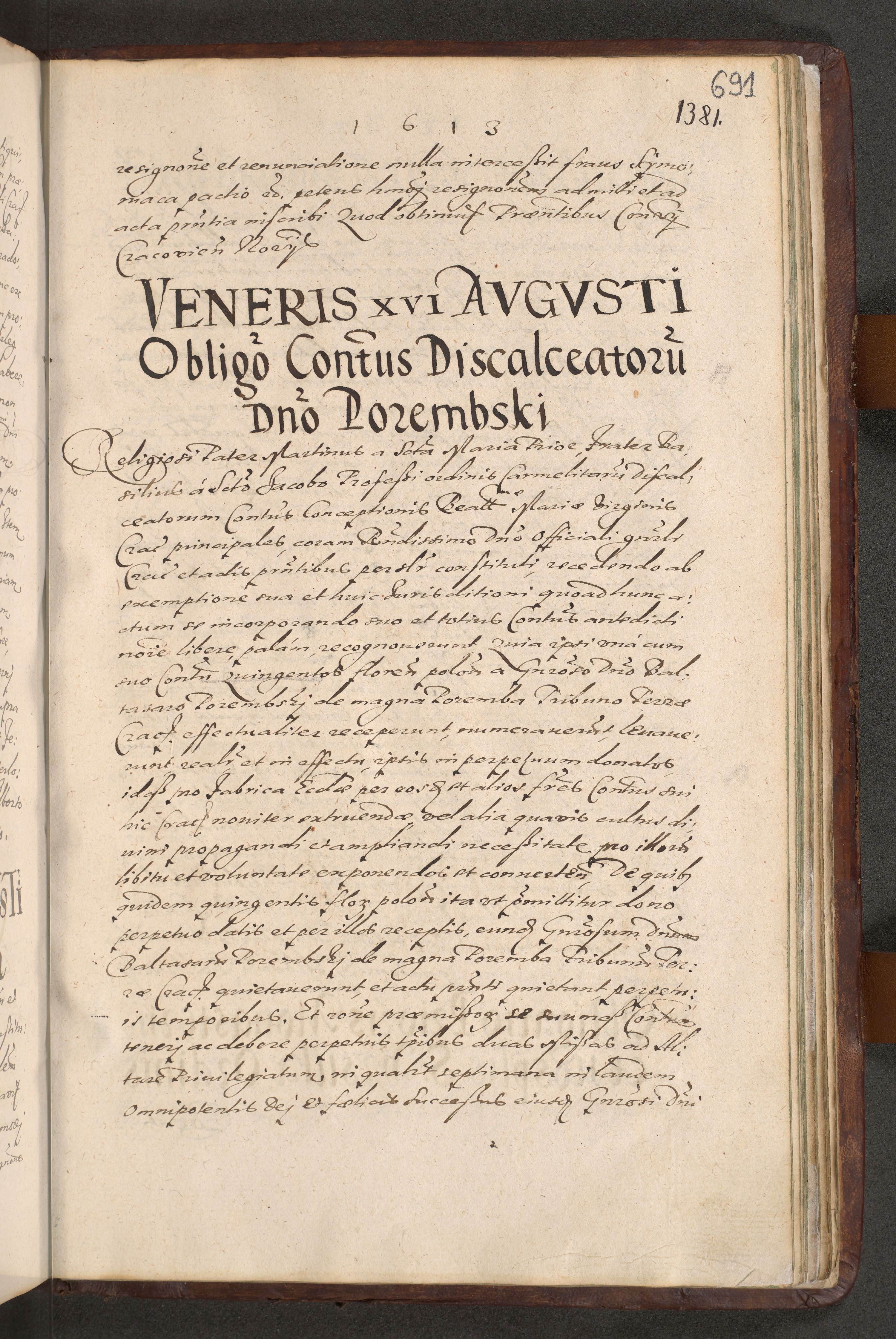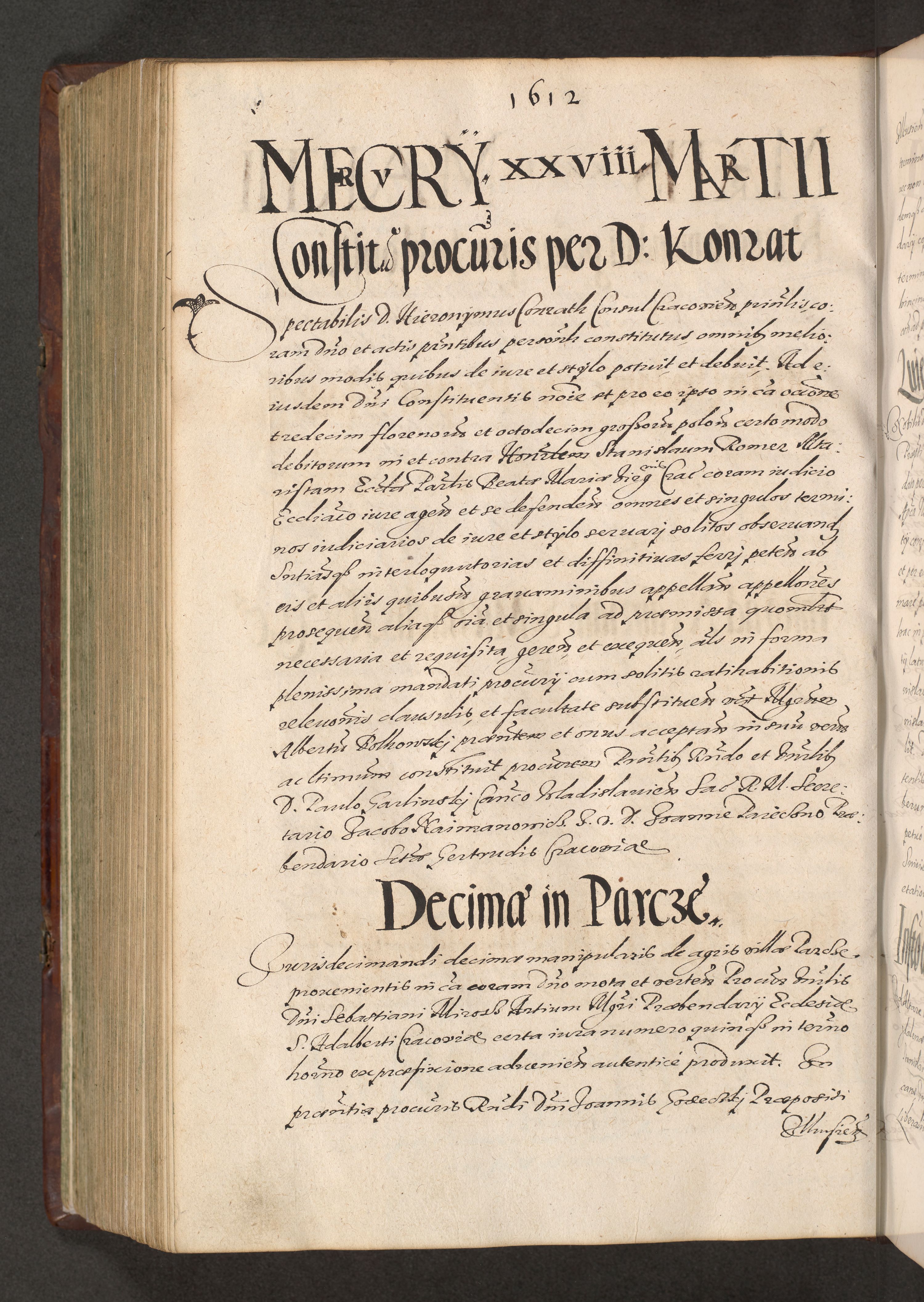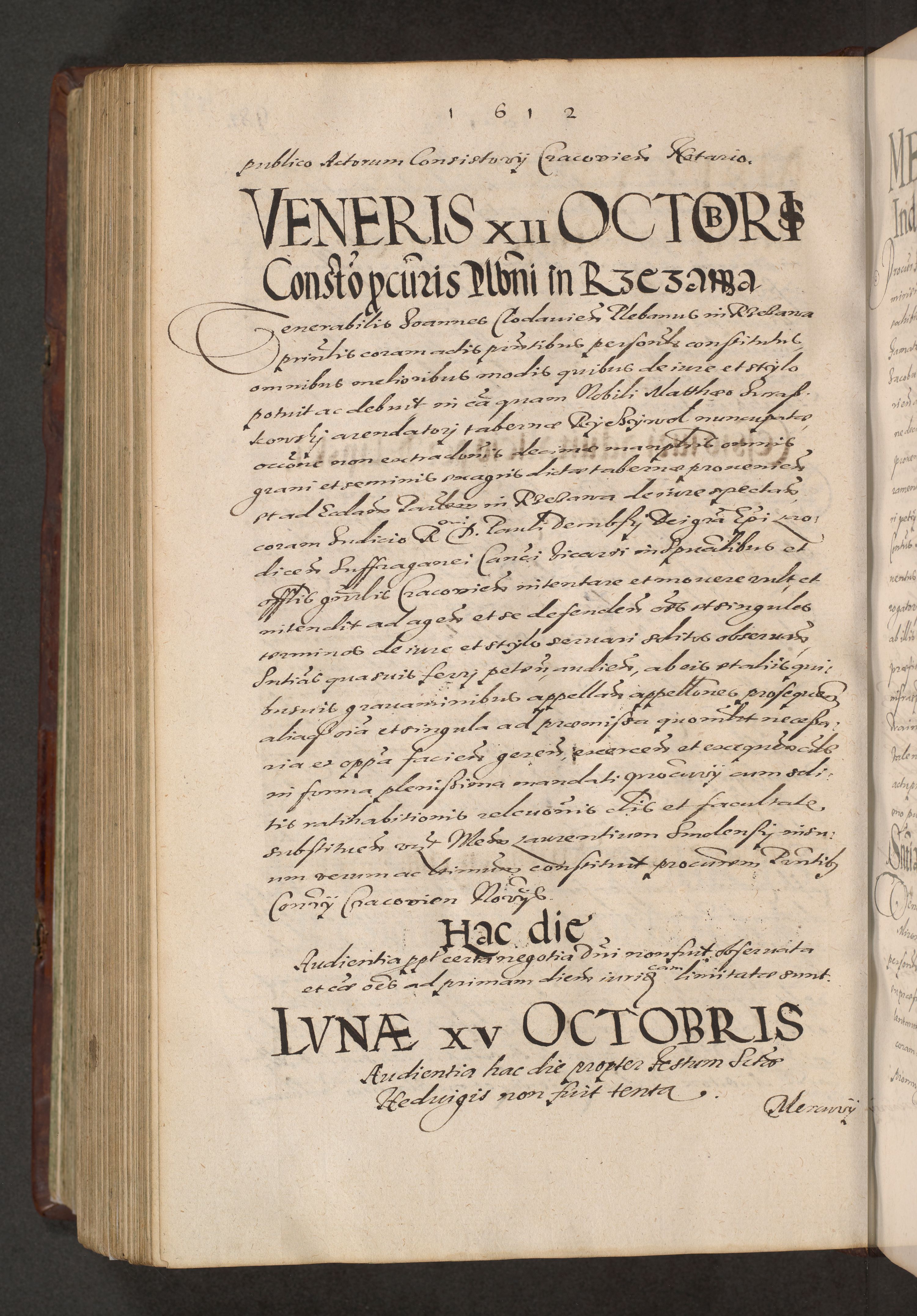 Acta actorum causarum sententiarum tam diffinitiuarum quam interloquutorisrum decretorum obligationum quietationum procuratorum constitutionum etc. etc. coram Reverendo Domino Paulo Dembski Dei et Apostolice Sedis Gratia Episcopalo Dicensis Suffraganeo Canonico Vicario in Spiritualibus et Officiali Generali Cracoviensis ad Annum Domini Millesimum Sexcentesimum Undecimum cuius indictio octava pontificatus Sanctissimi Domini Nostri Domini Pauli Divina Providentia Papae Vti foeliciter continuantur