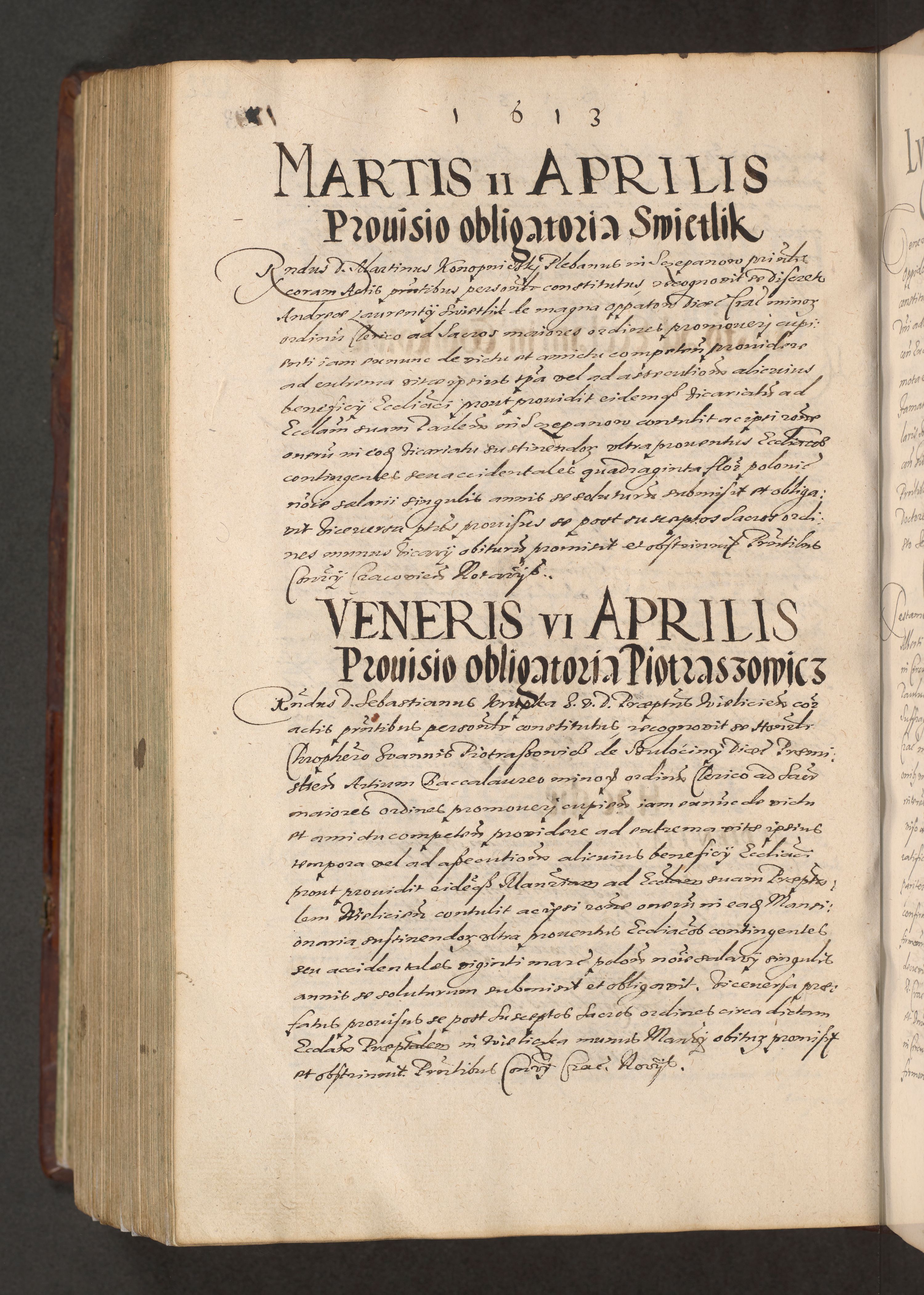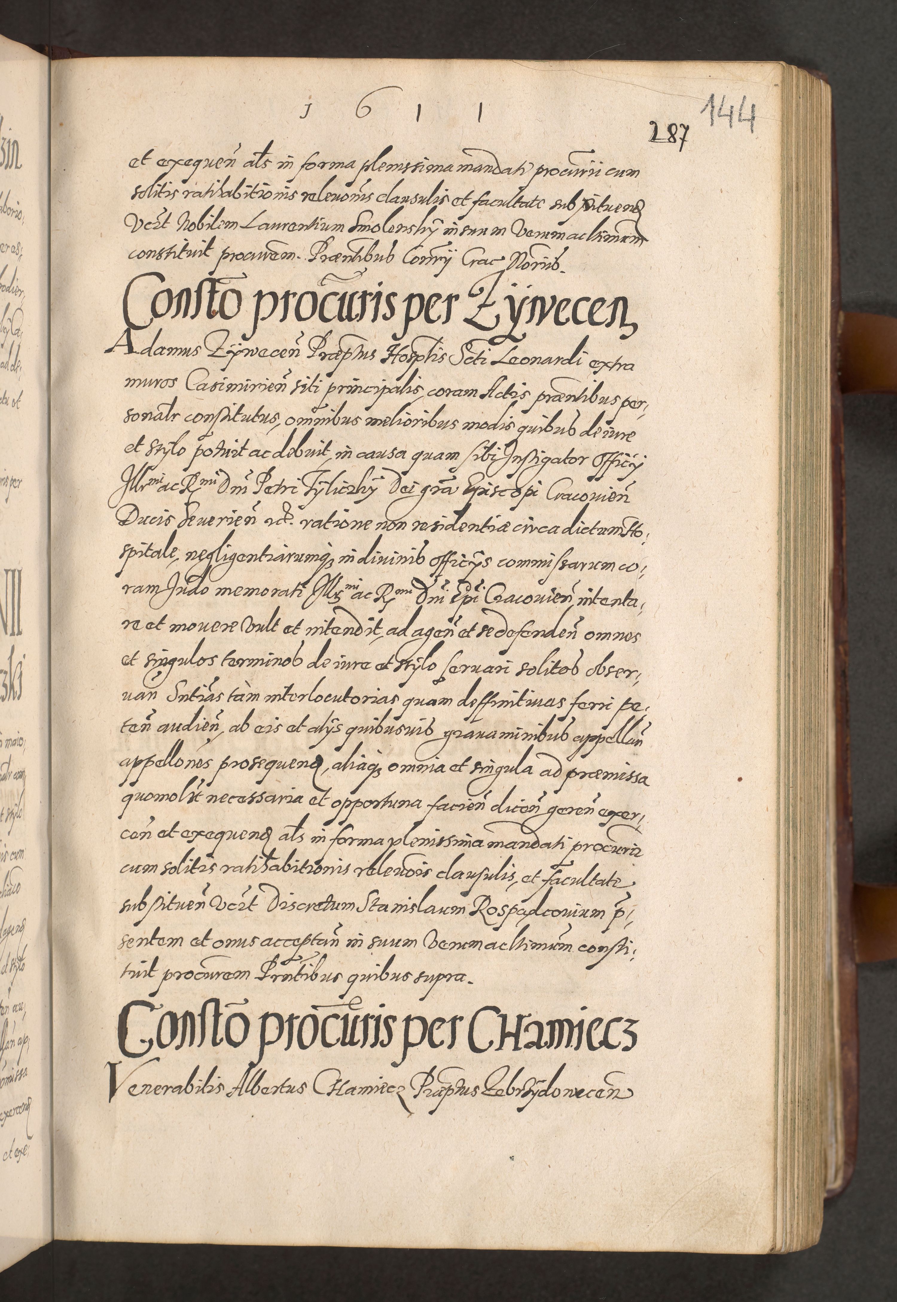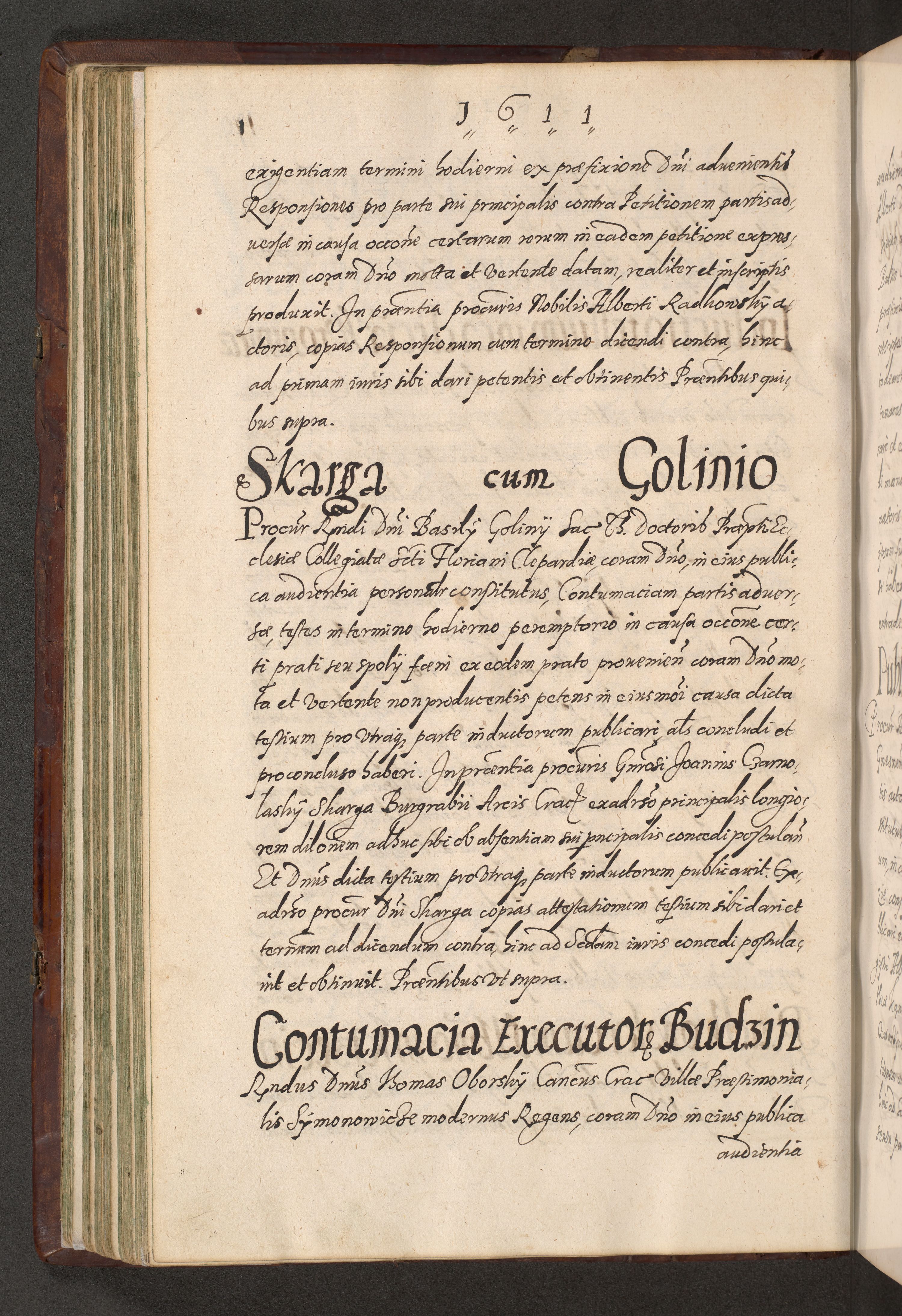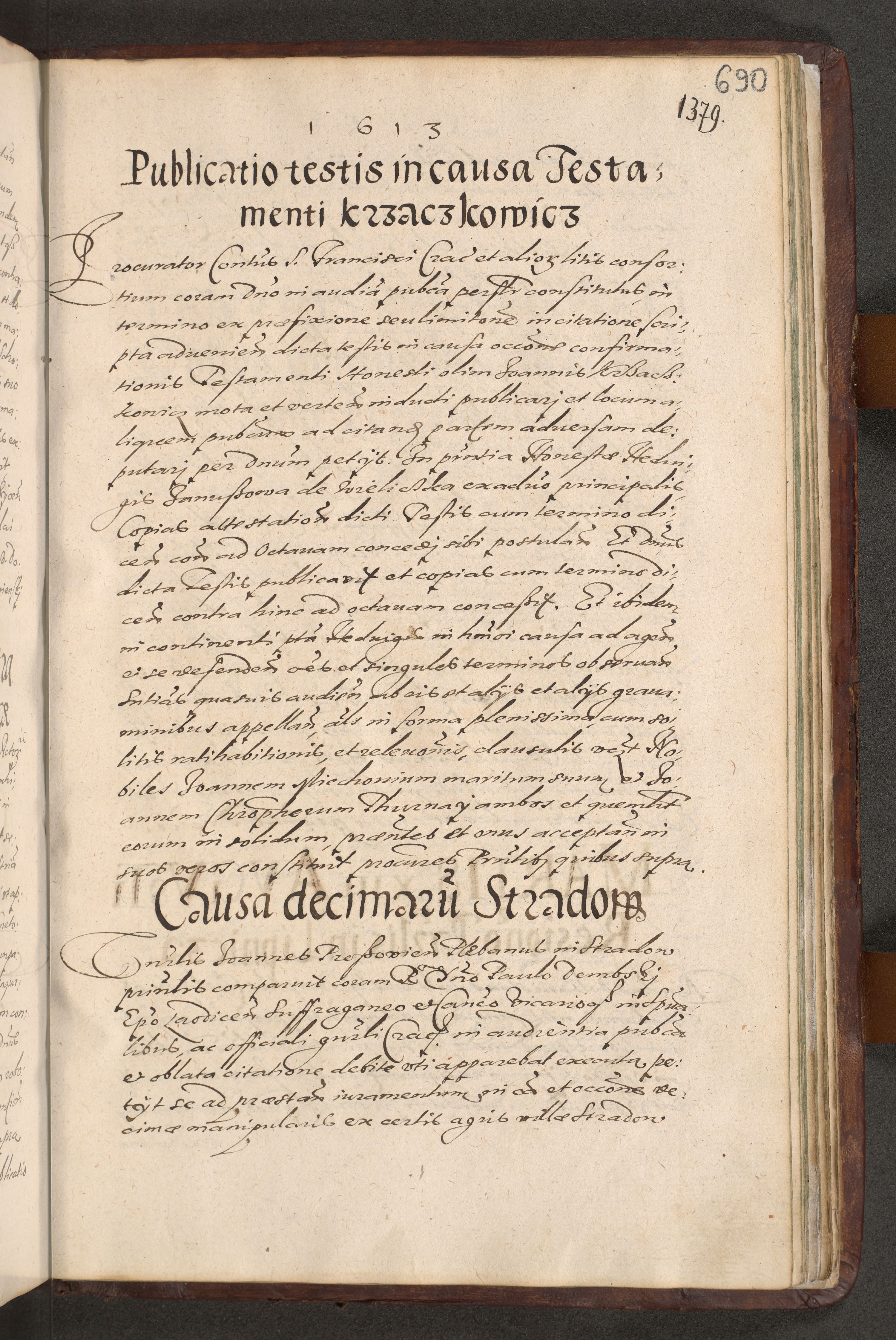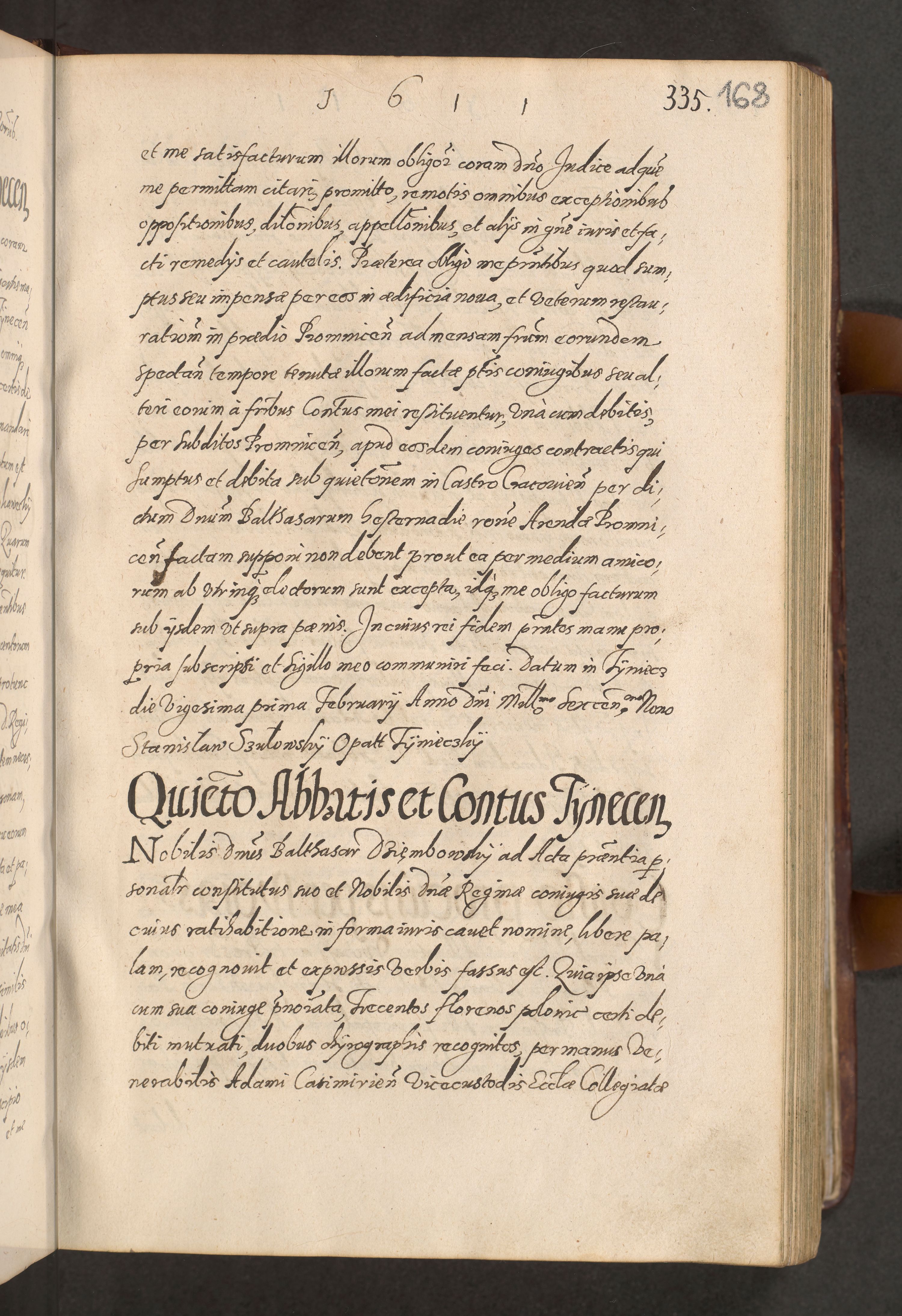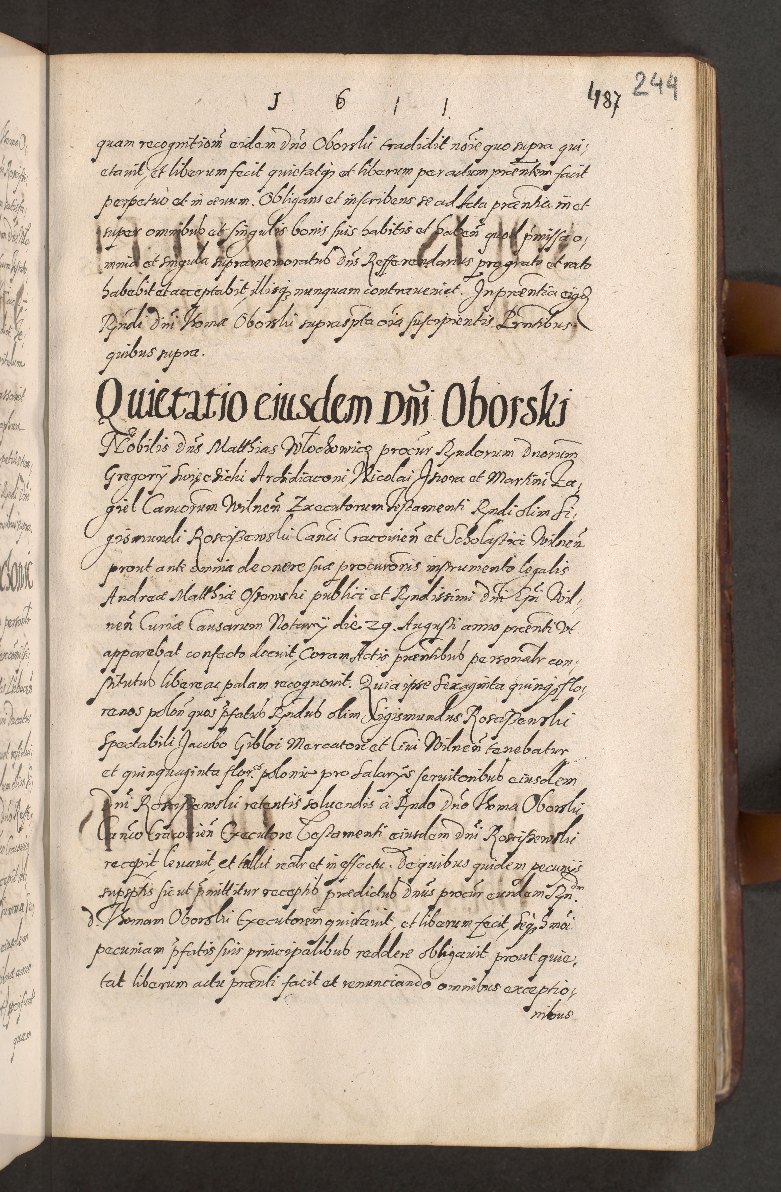 Acta actorum causarum sententiarum tam diffinitiuarum quam interloquutorisrum decretorum obligationum quietationum procuratorum constitutionum etc. etc. coram Reverendo Domino Paulo Dembski Dei et Apostolice Sedis Gratia Episcopalo Dicensis Suffraganeo Canonico Vicario in Spiritualibus et Officiali Generali Cracoviensis ad Annum Domini Millesimum Sexcentesimum Undecimum cuius indictio octava pontificatus Sanctissimi Domini Nostri Domini Pauli Divina Providentia Papae Vti foeliciter continuantur