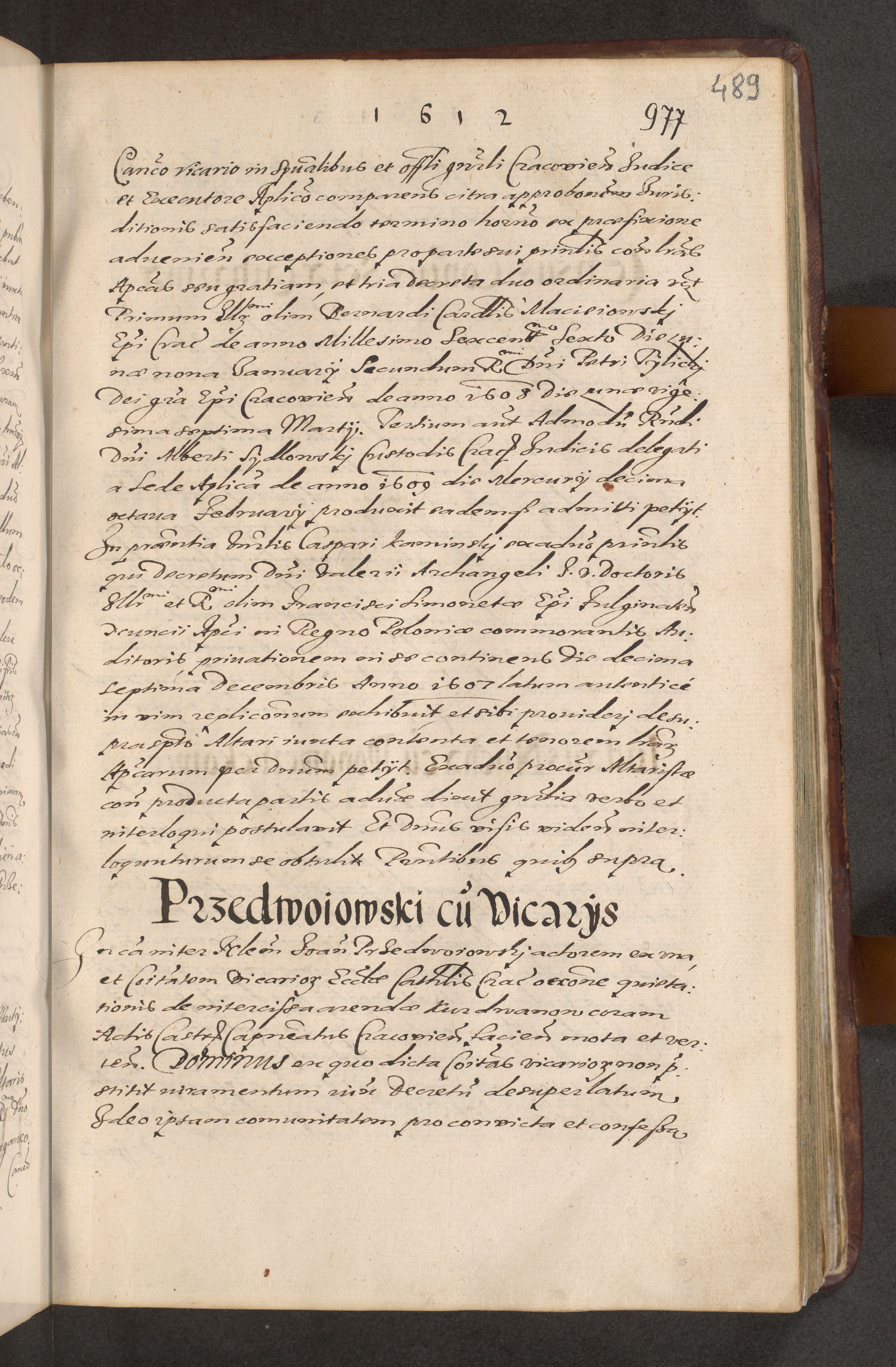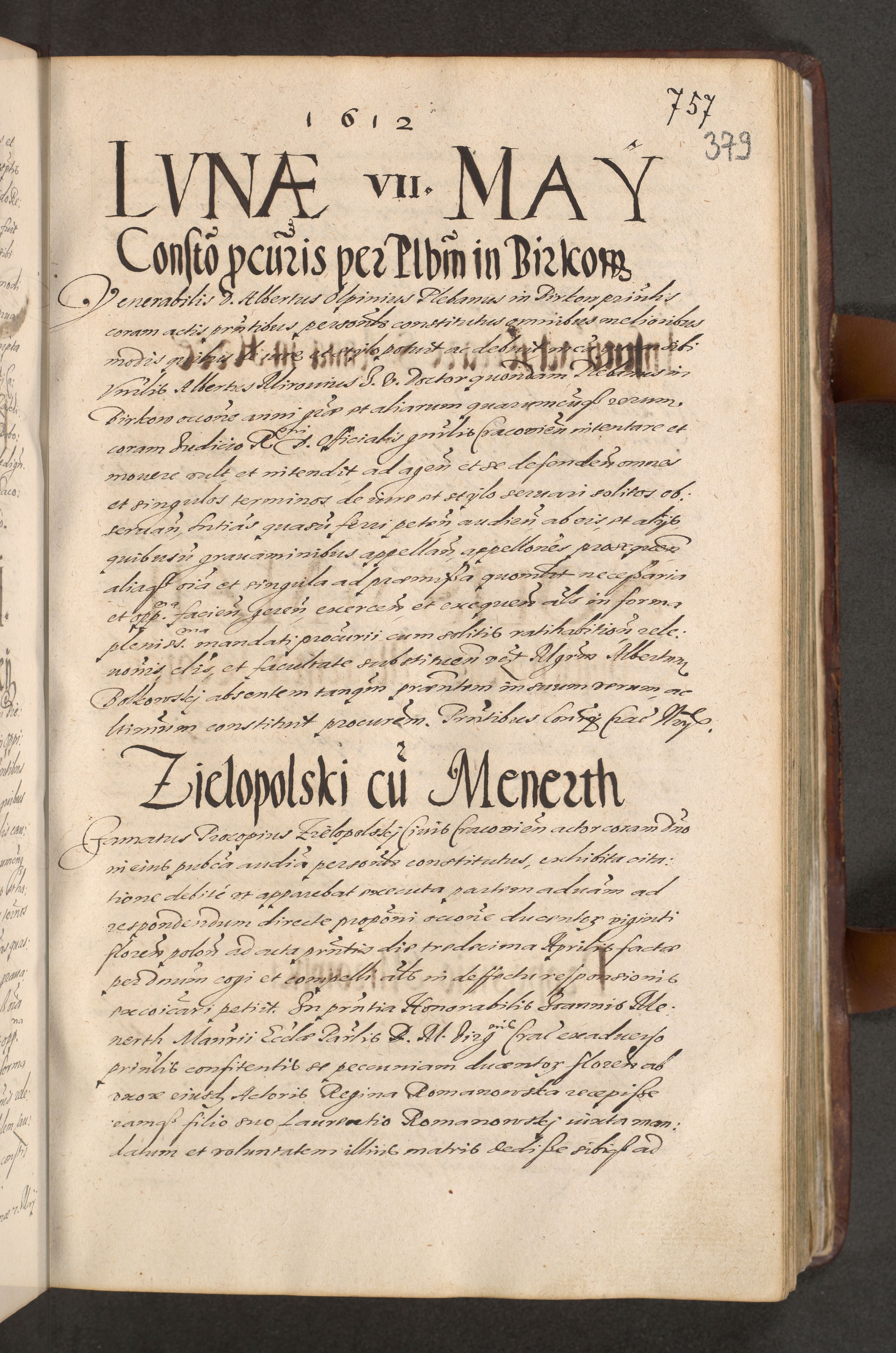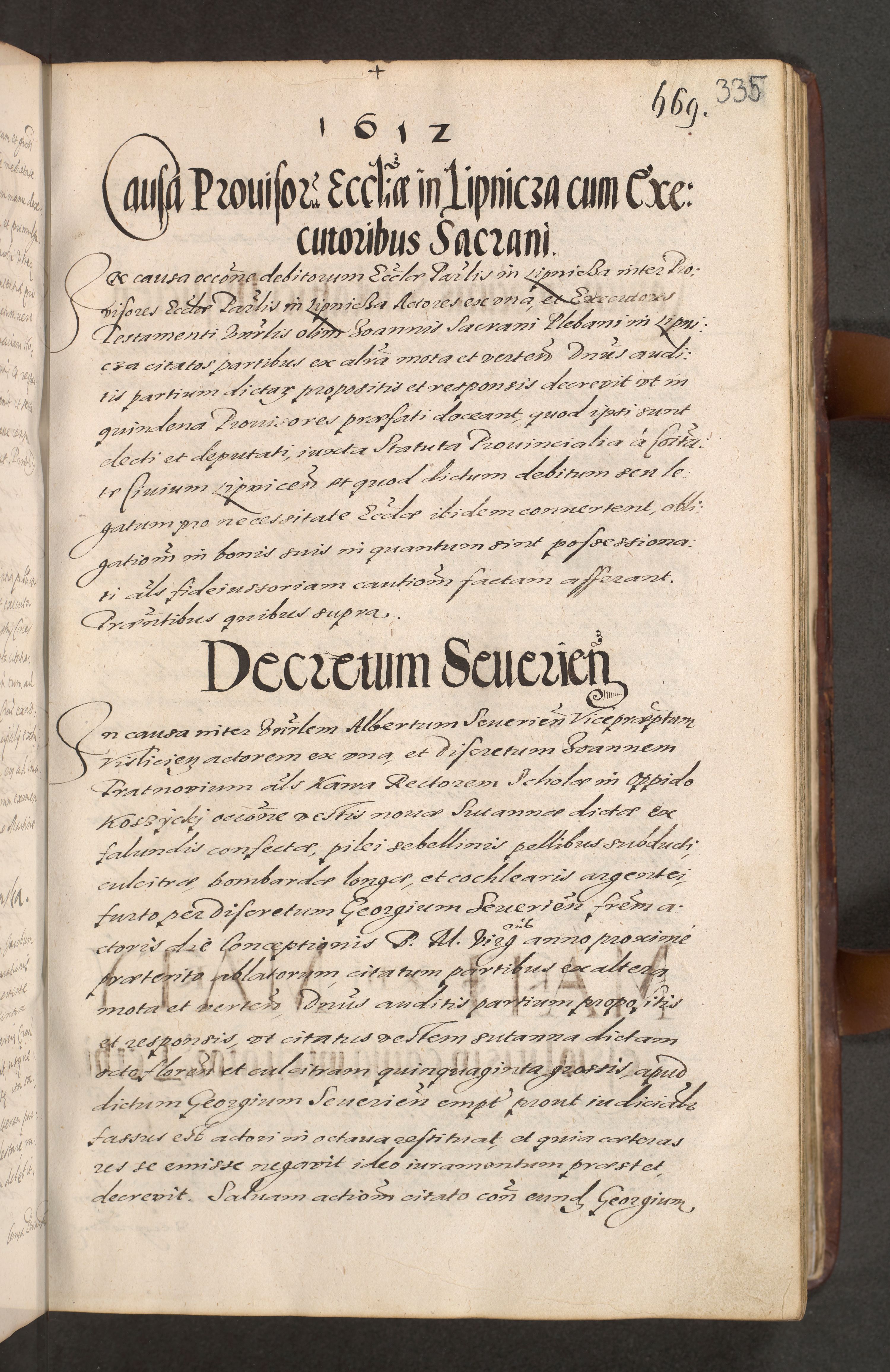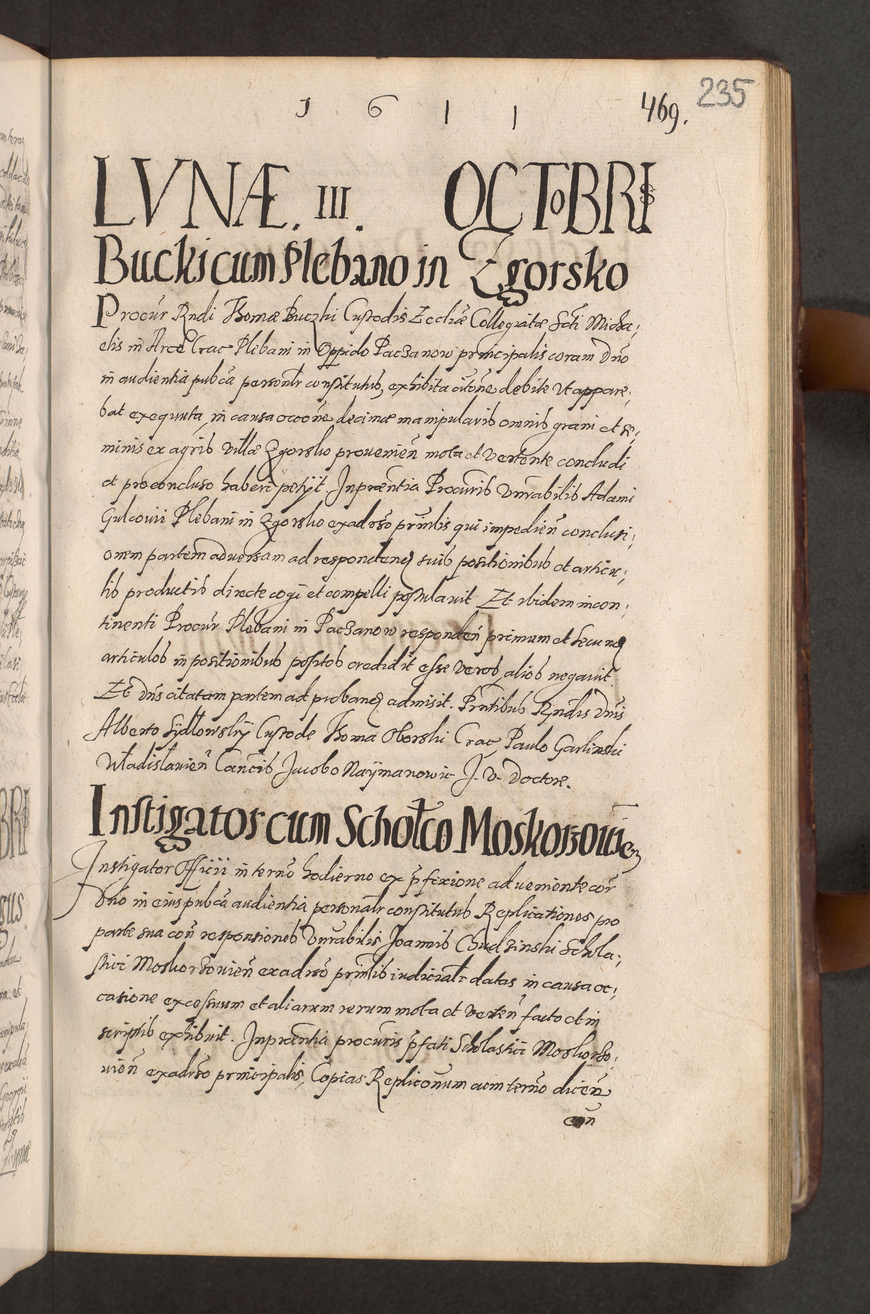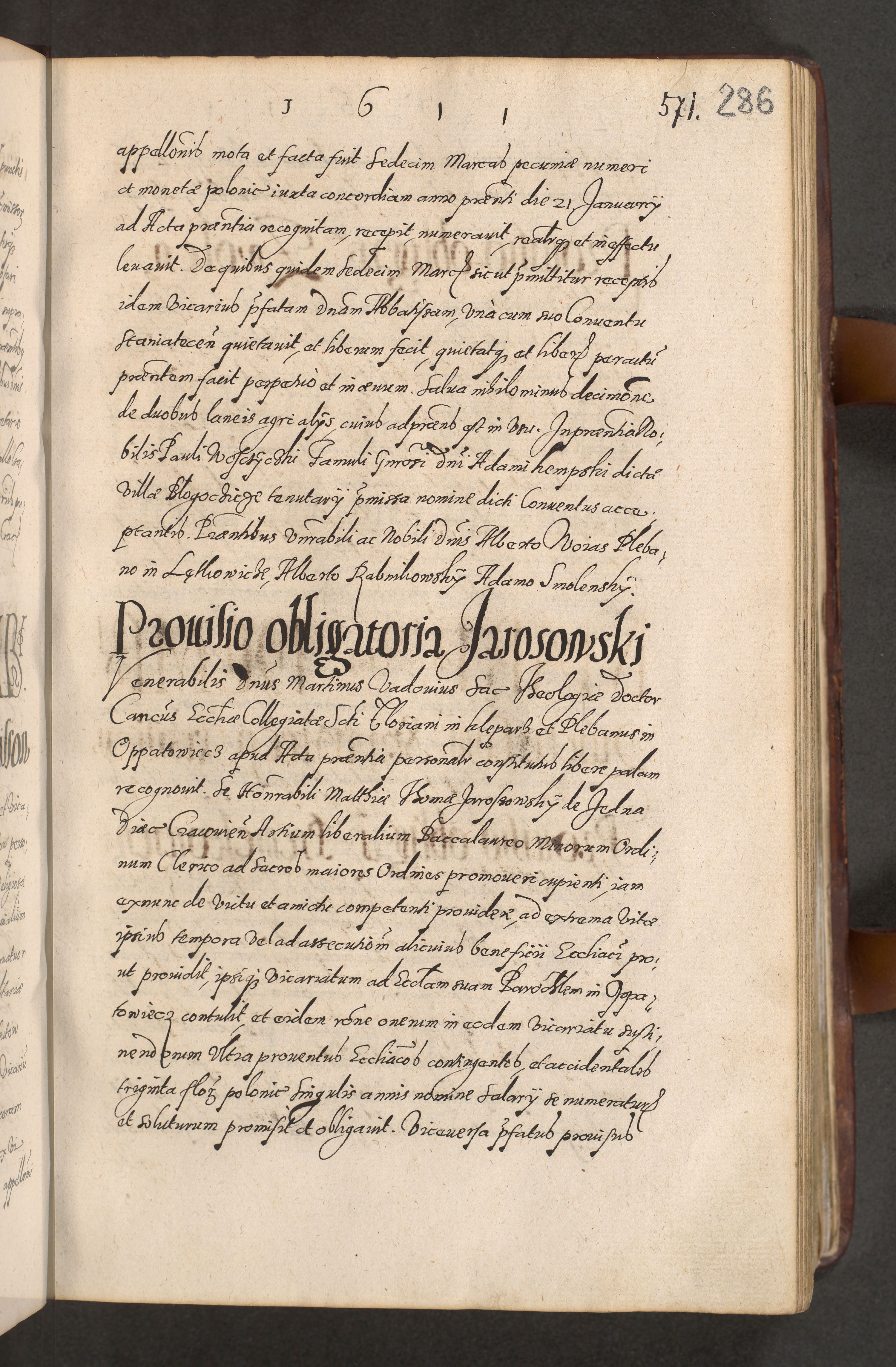 Acta actorum causarum sententiarum tam diffinitiuarum quam interloquutorisrum decretorum obligationum quietationum procuratorum constitutionum etc. etc. coram Reverendo Domino Paulo Dembski Dei et Apostolice Sedis Gratia Episcopalo Dicensis Suffraganeo Canonico Vicario in Spiritualibus et Officiali Generali Cracoviensis ad Annum Domini Millesimum Sexcentesimum Undecimum cuius indictio octava pontificatus Sanctissimi Domini Nostri Domini Pauli Divina Providentia Papae Vti foeliciter continuantur