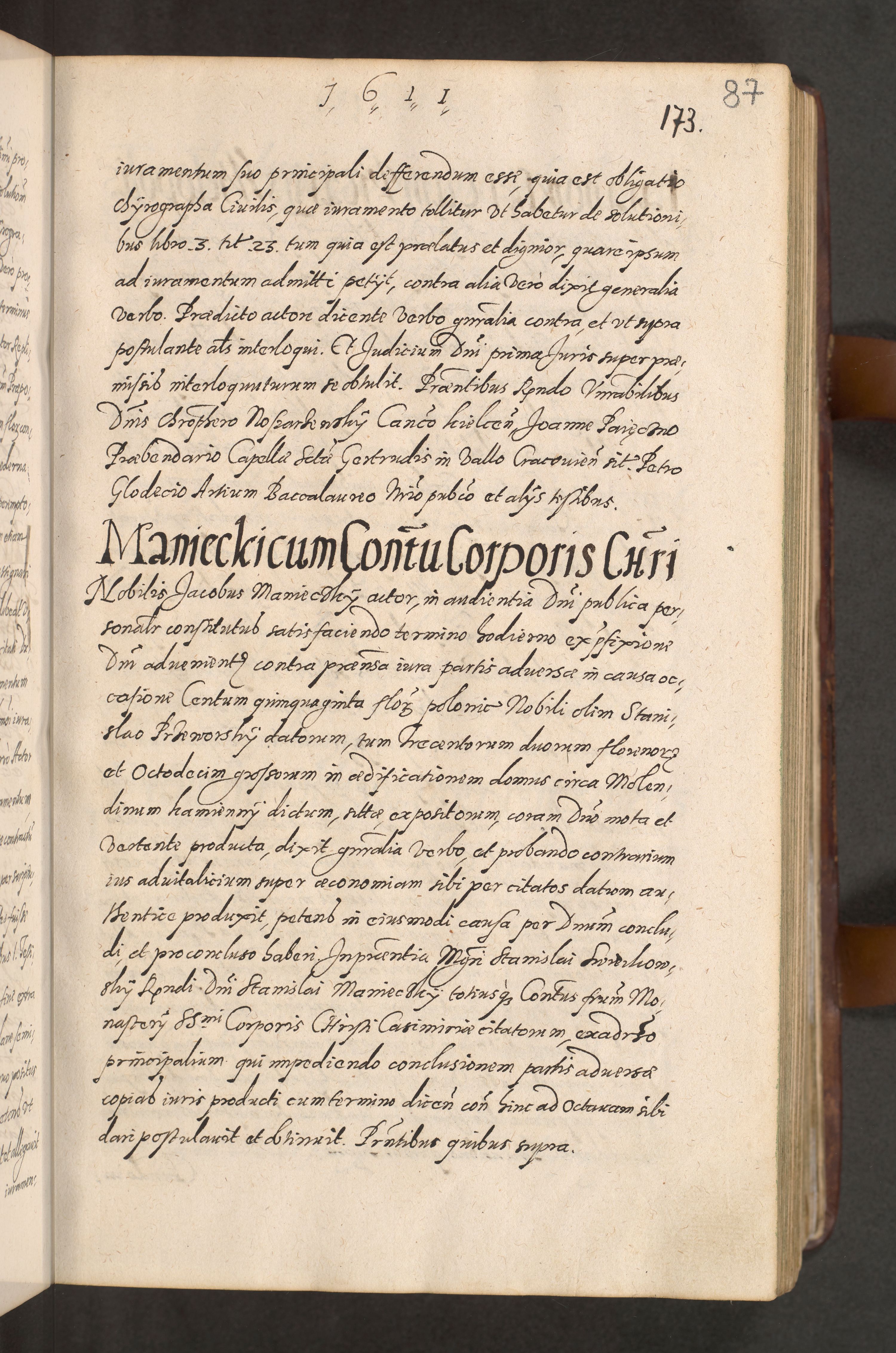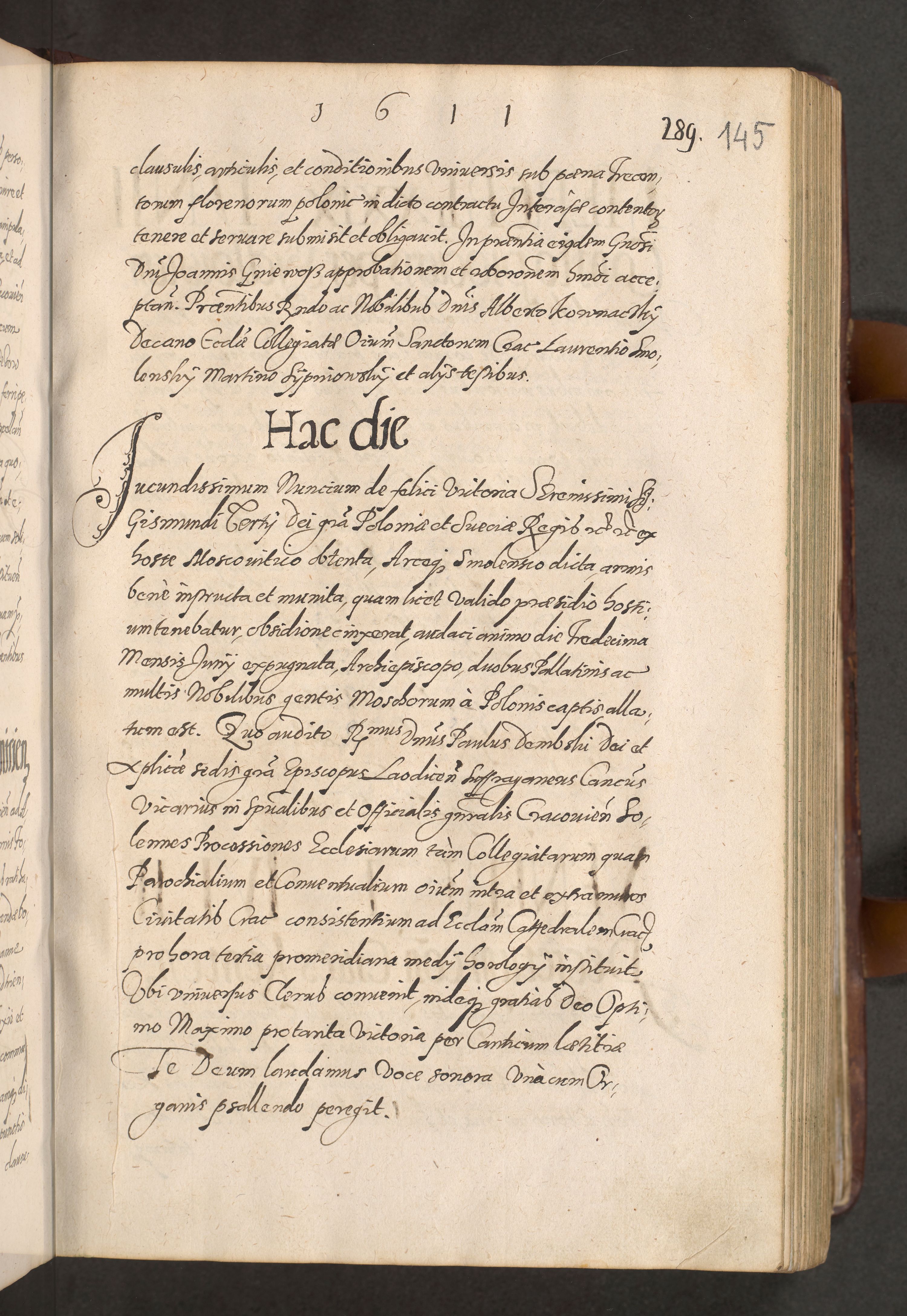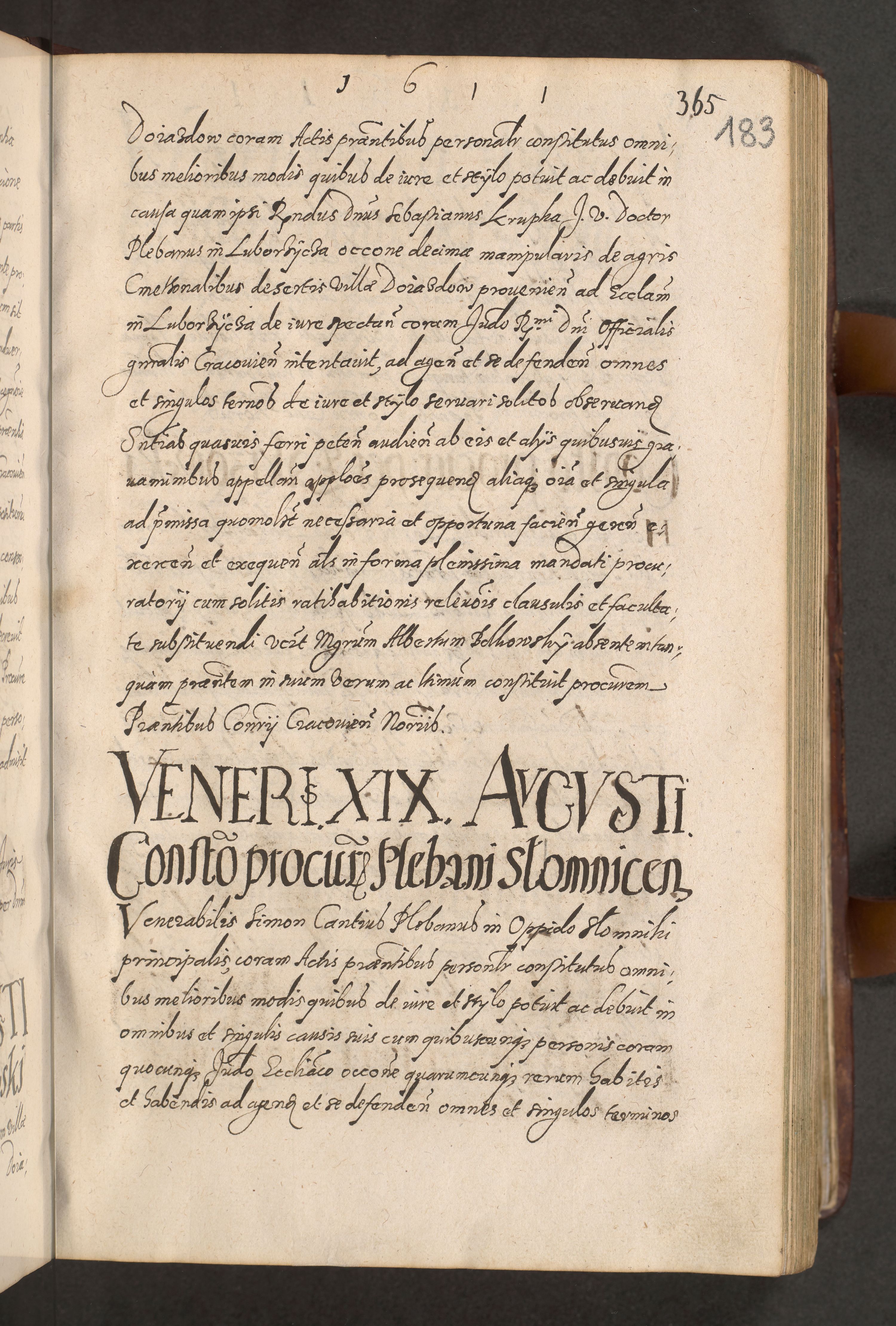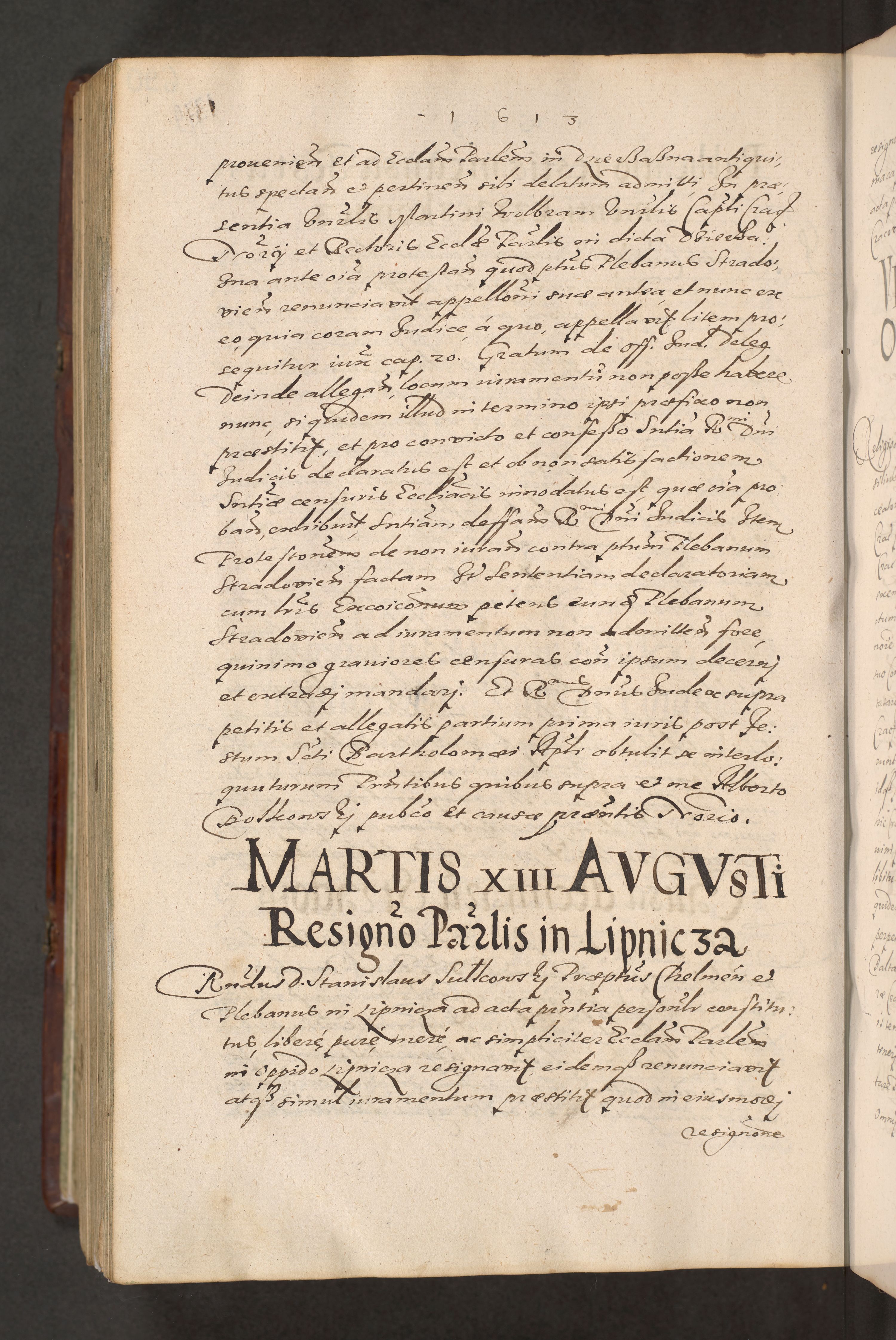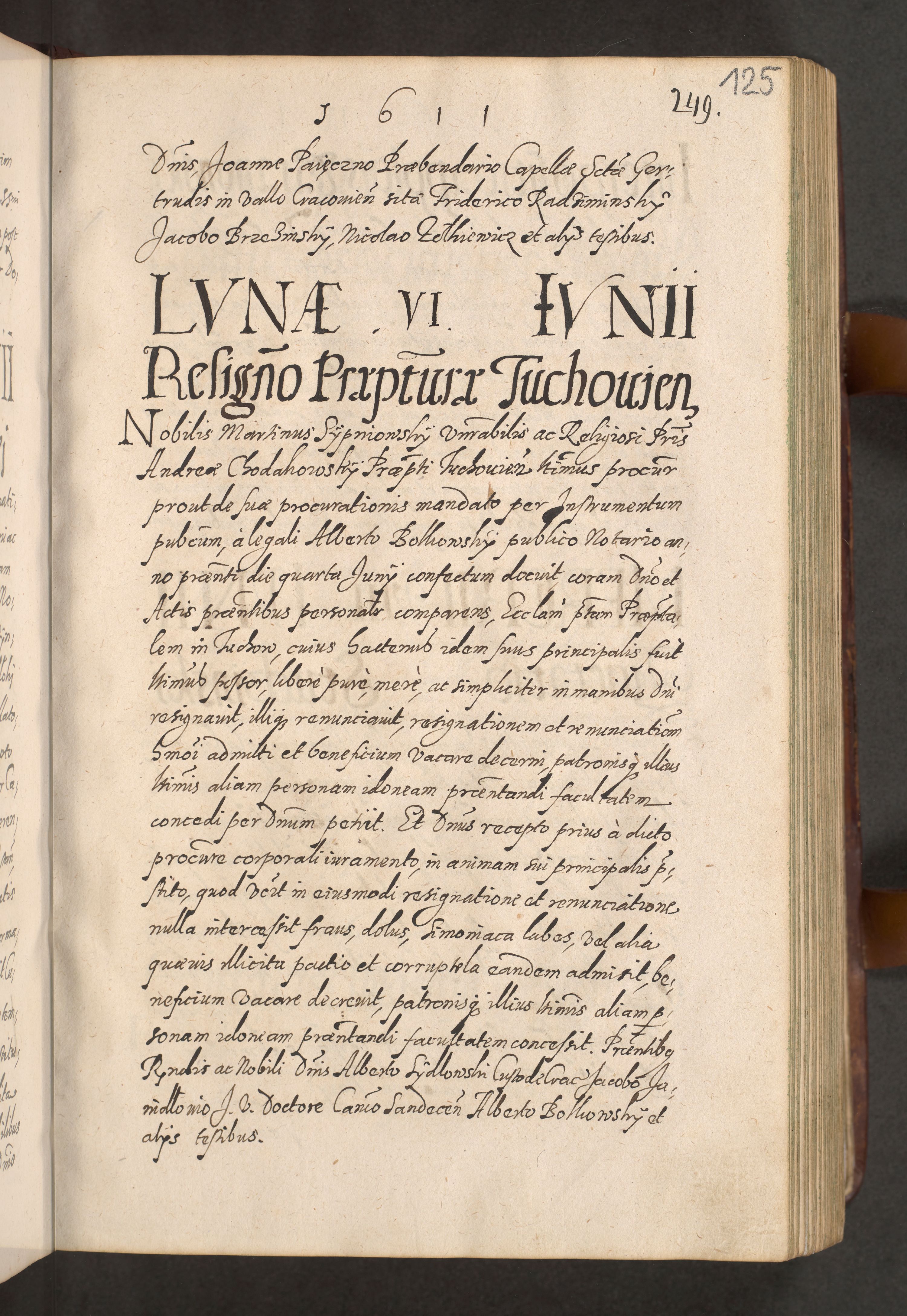 Acta actorum causarum sententiarum tam diffinitiuarum quam interloquutorisrum decretorum obligationum quietationum procuratorum constitutionum etc. etc. coram Reverendo Domino Paulo Dembski Dei et Apostolice Sedis Gratia Episcopalo Dicensis Suffraganeo Canonico Vicario in Spiritualibus et Officiali Generali Cracoviensis ad Annum Domini Millesimum Sexcentesimum Undecimum cuius indictio octava pontificatus Sanctissimi Domini Nostri Domini Pauli Divina Providentia Papae Vti foeliciter continuantur