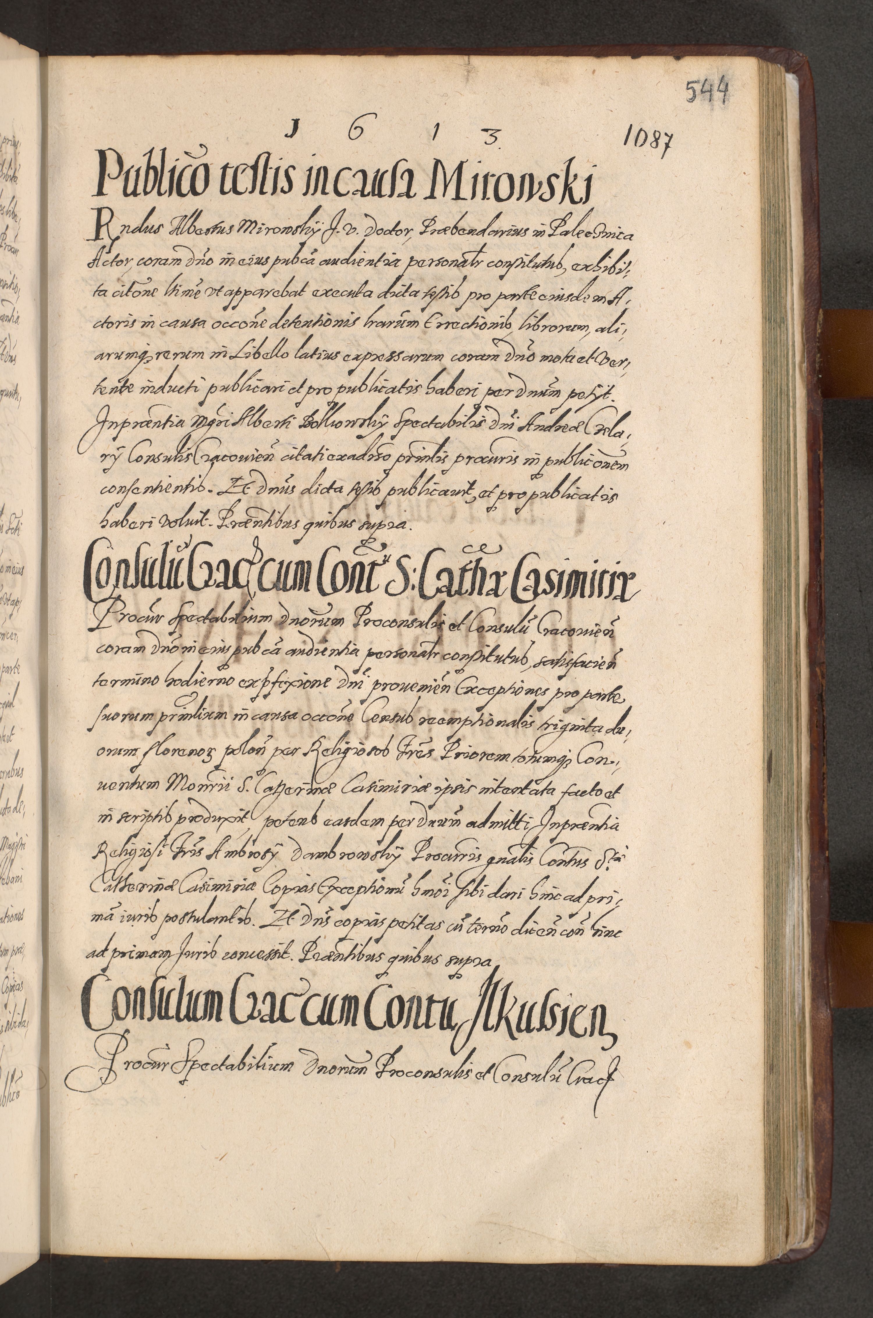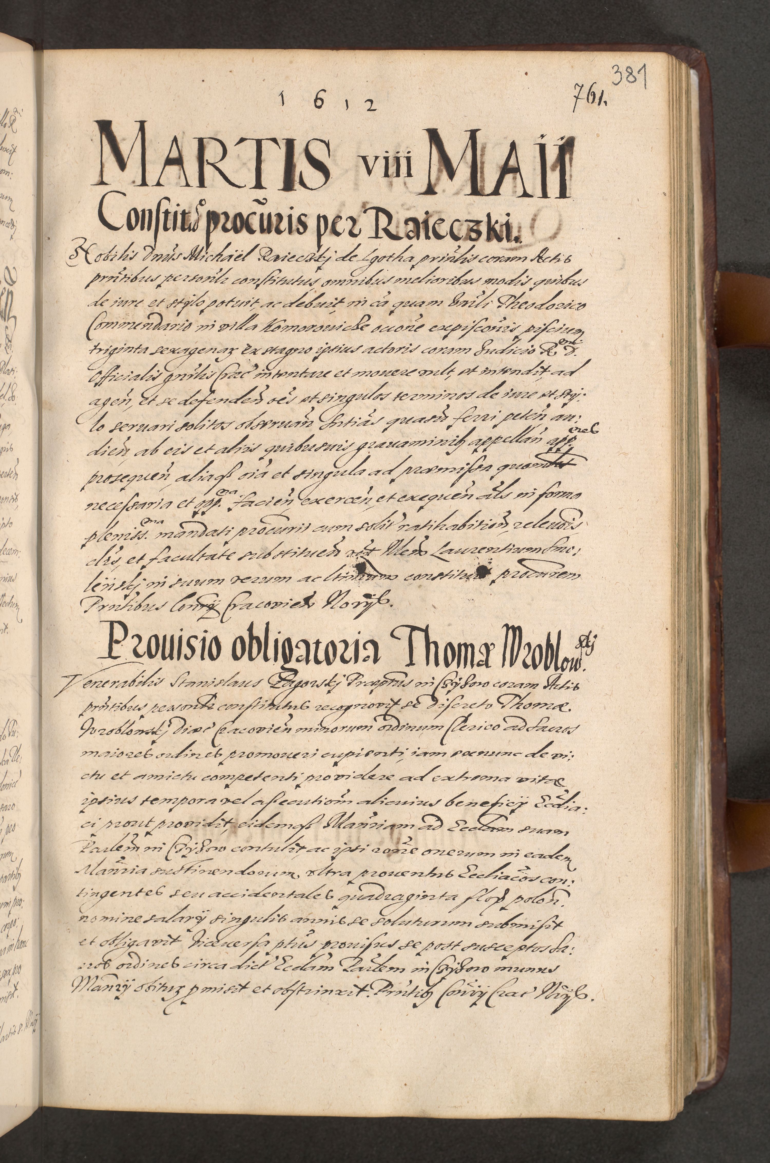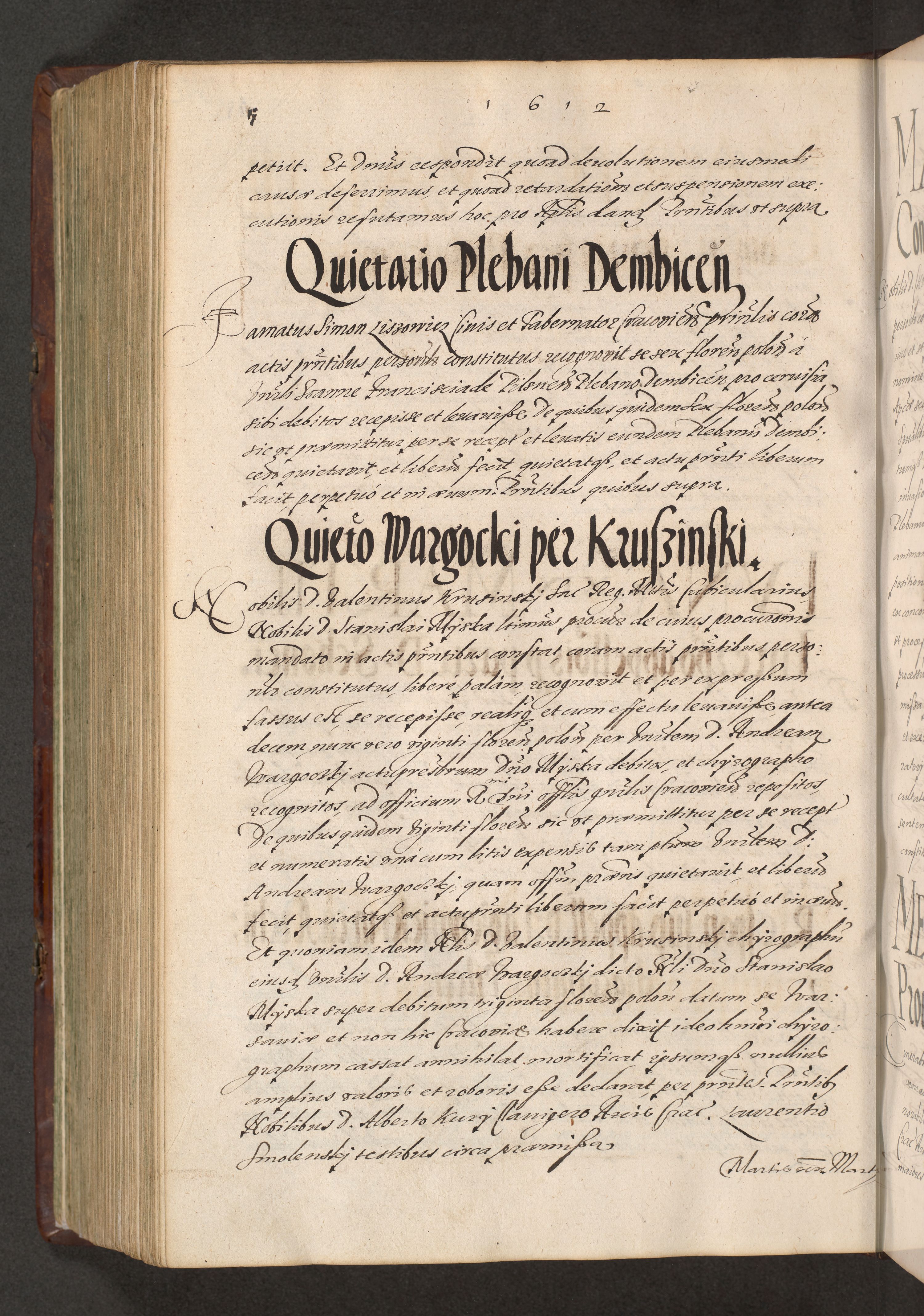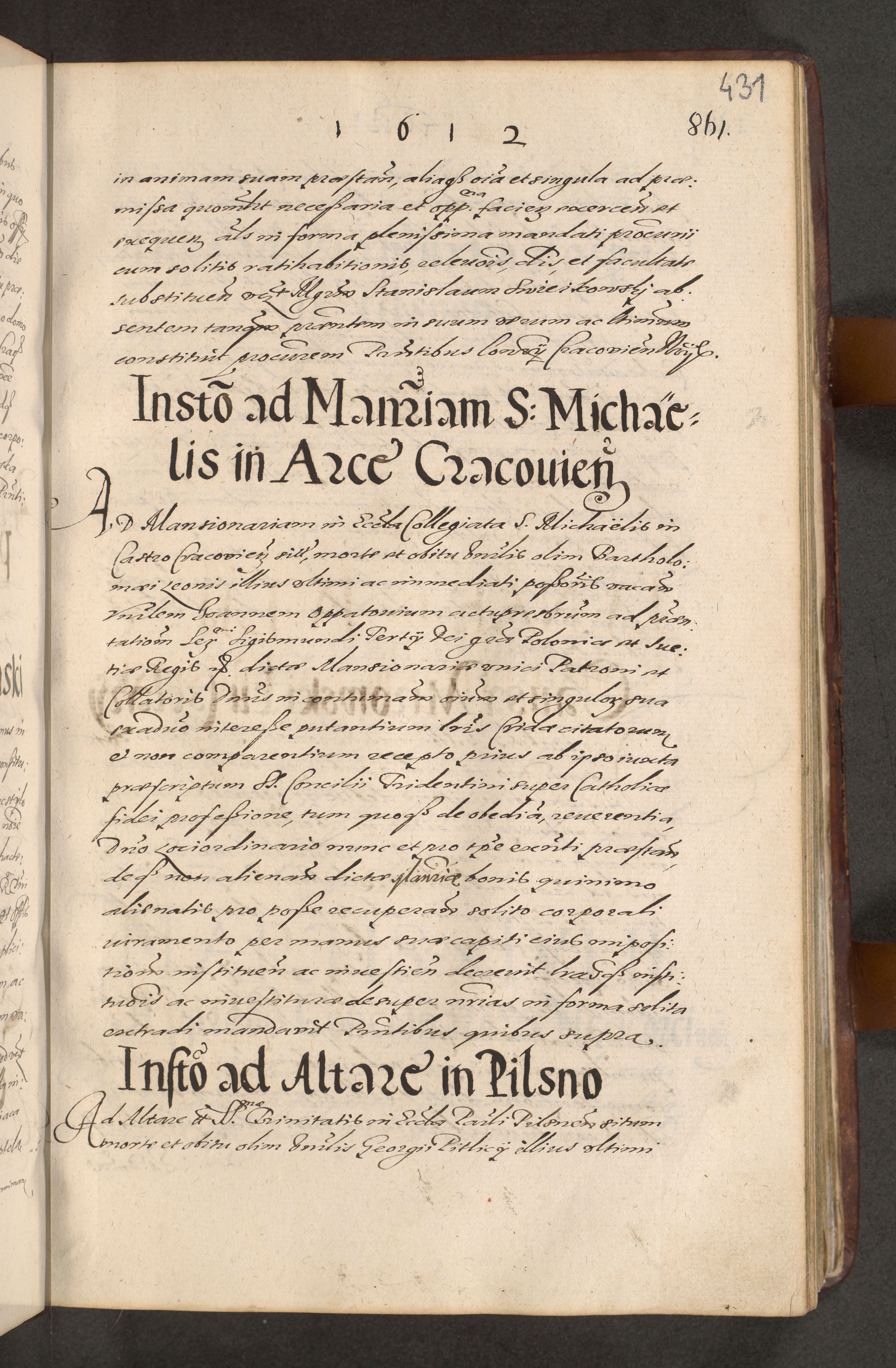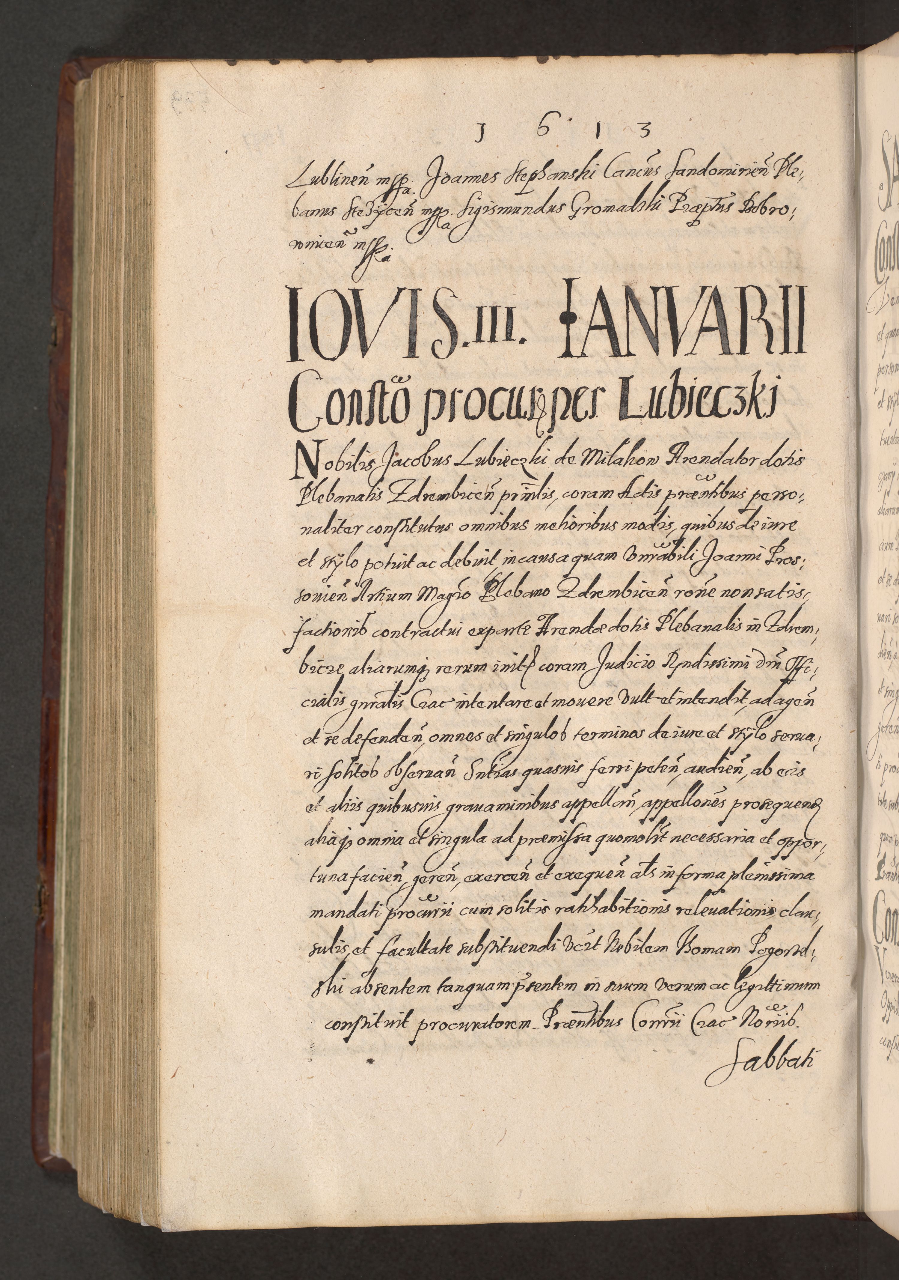 Acta actorum causarum sententiarum tam diffinitiuarum quam interloquutorisrum decretorum obligationum quietationum procuratorum constitutionum etc. etc. coram Reverendo Domino Paulo Dembski Dei et Apostolice Sedis Gratia Episcopalo Dicensis Suffraganeo Canonico Vicario in Spiritualibus et Officiali Generali Cracoviensis ad Annum Domini Millesimum Sexcentesimum Undecimum cuius indictio octava pontificatus Sanctissimi Domini Nostri Domini Pauli Divina Providentia Papae Vti foeliciter continuantur