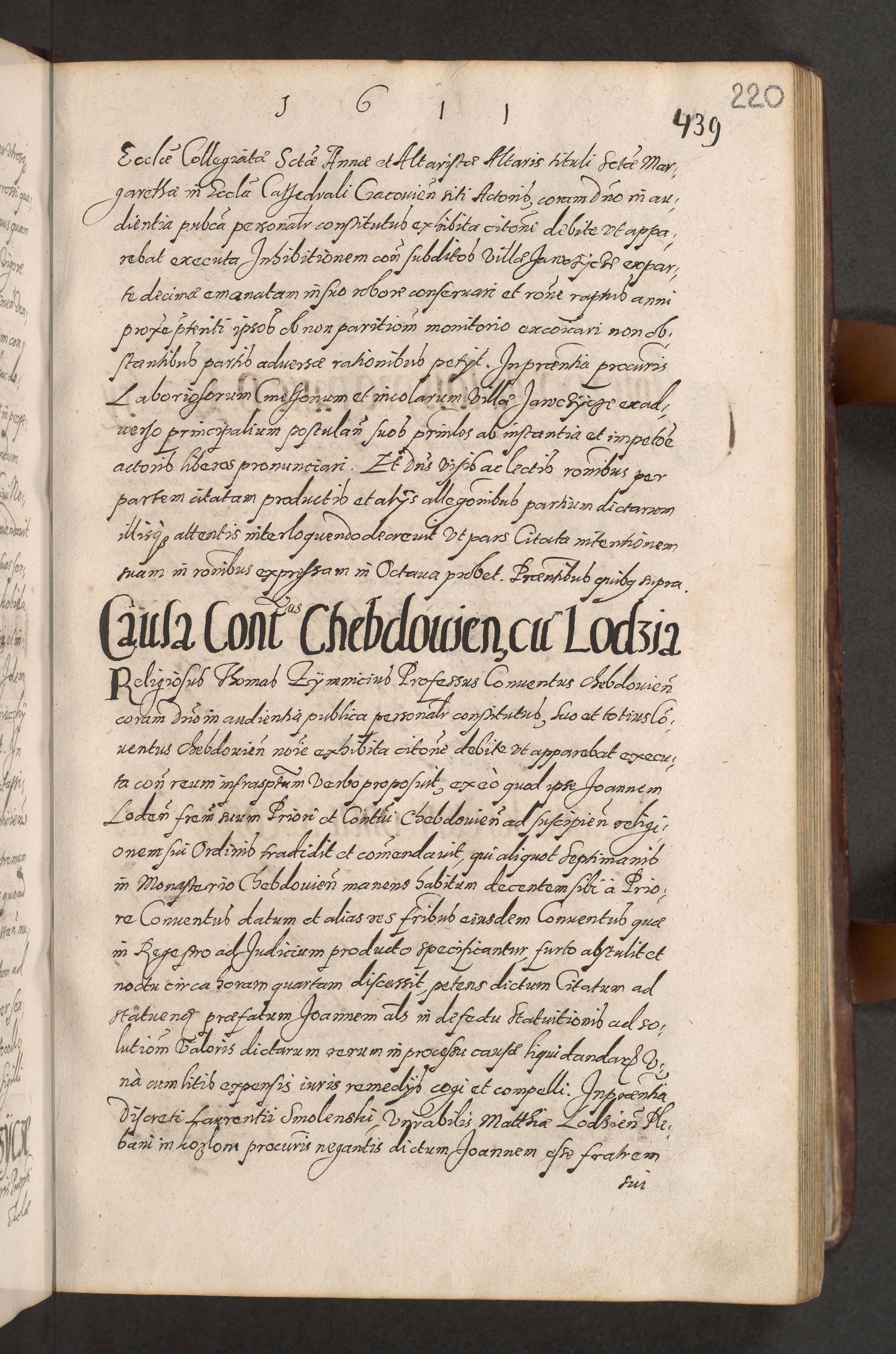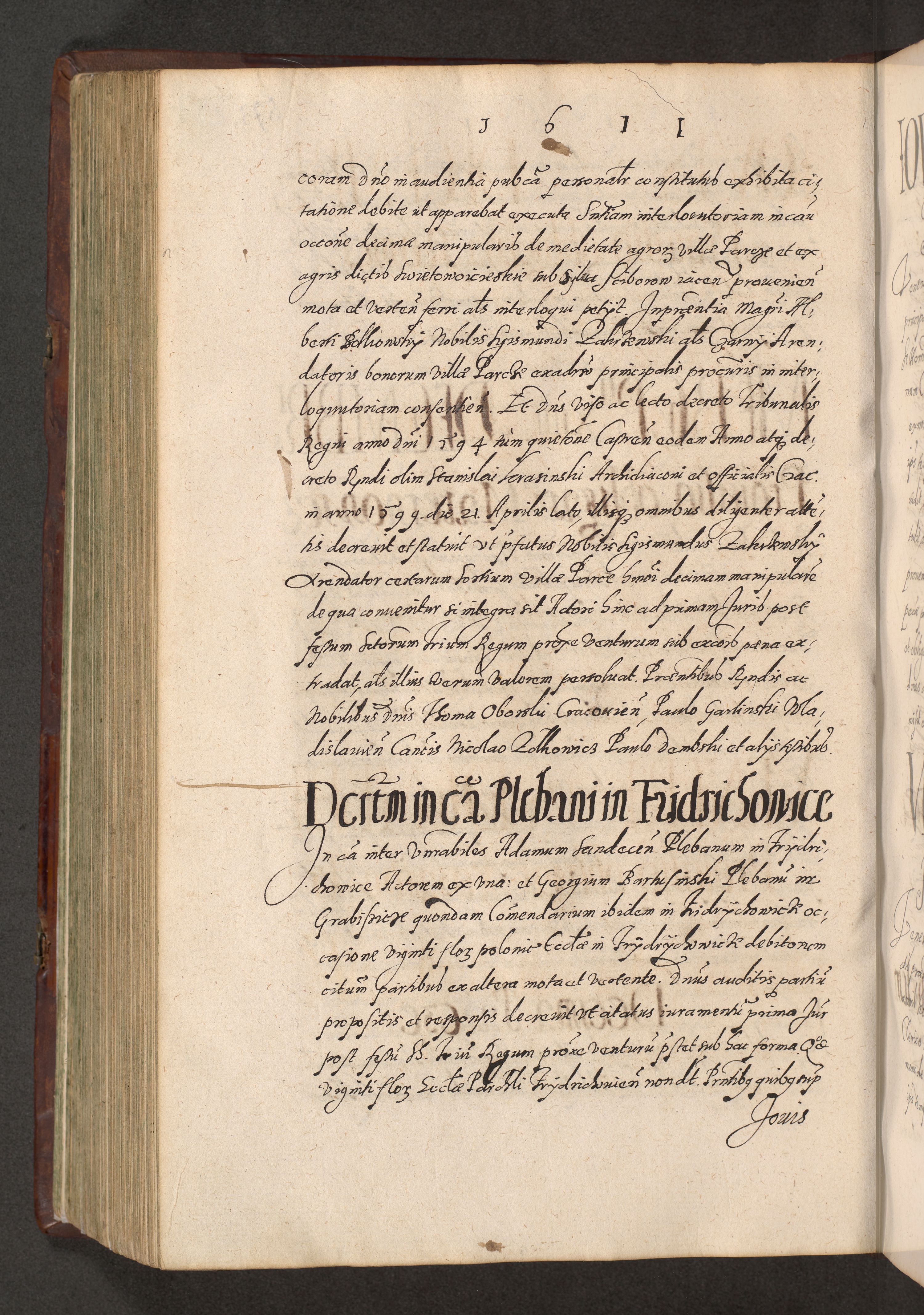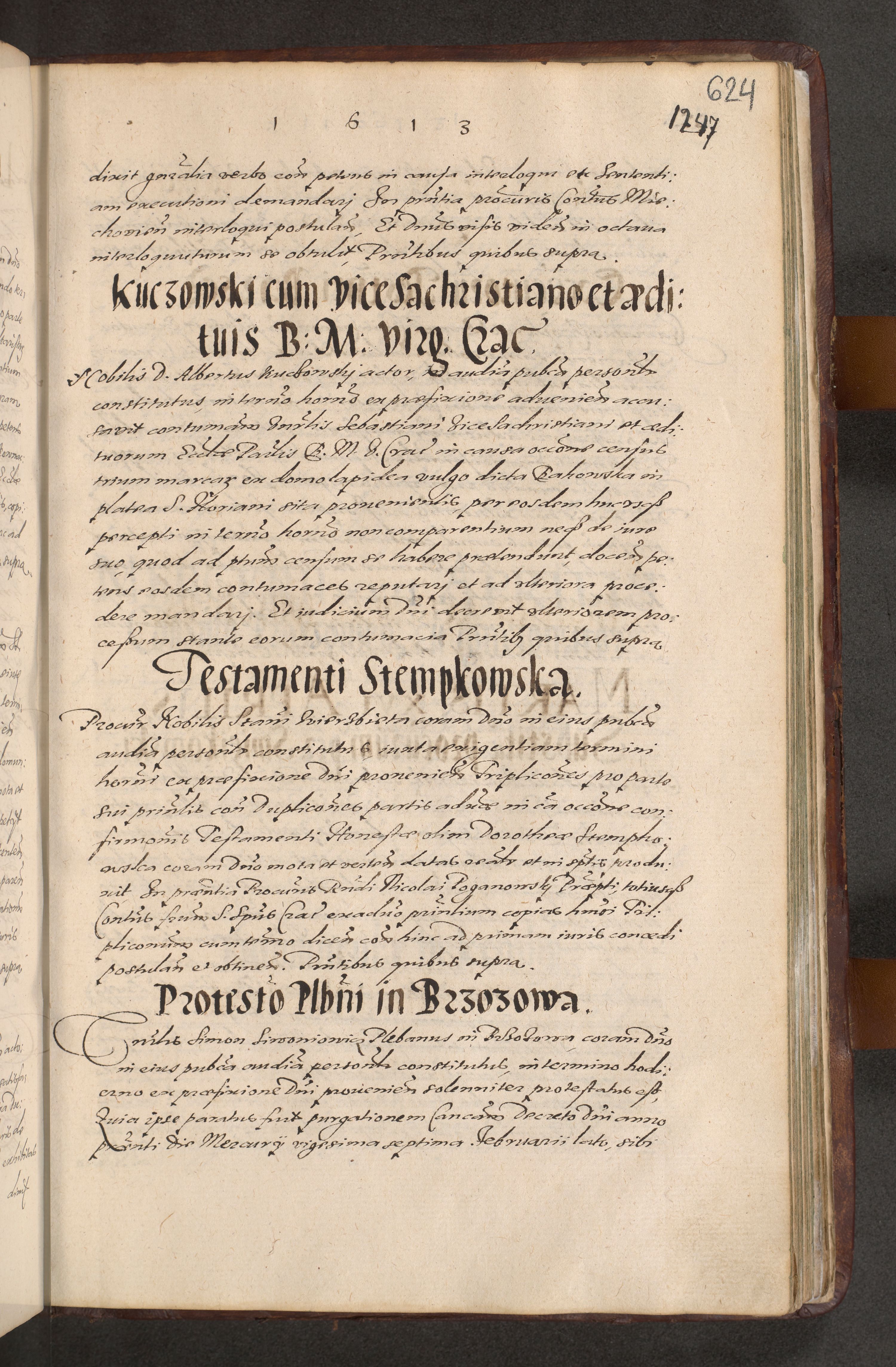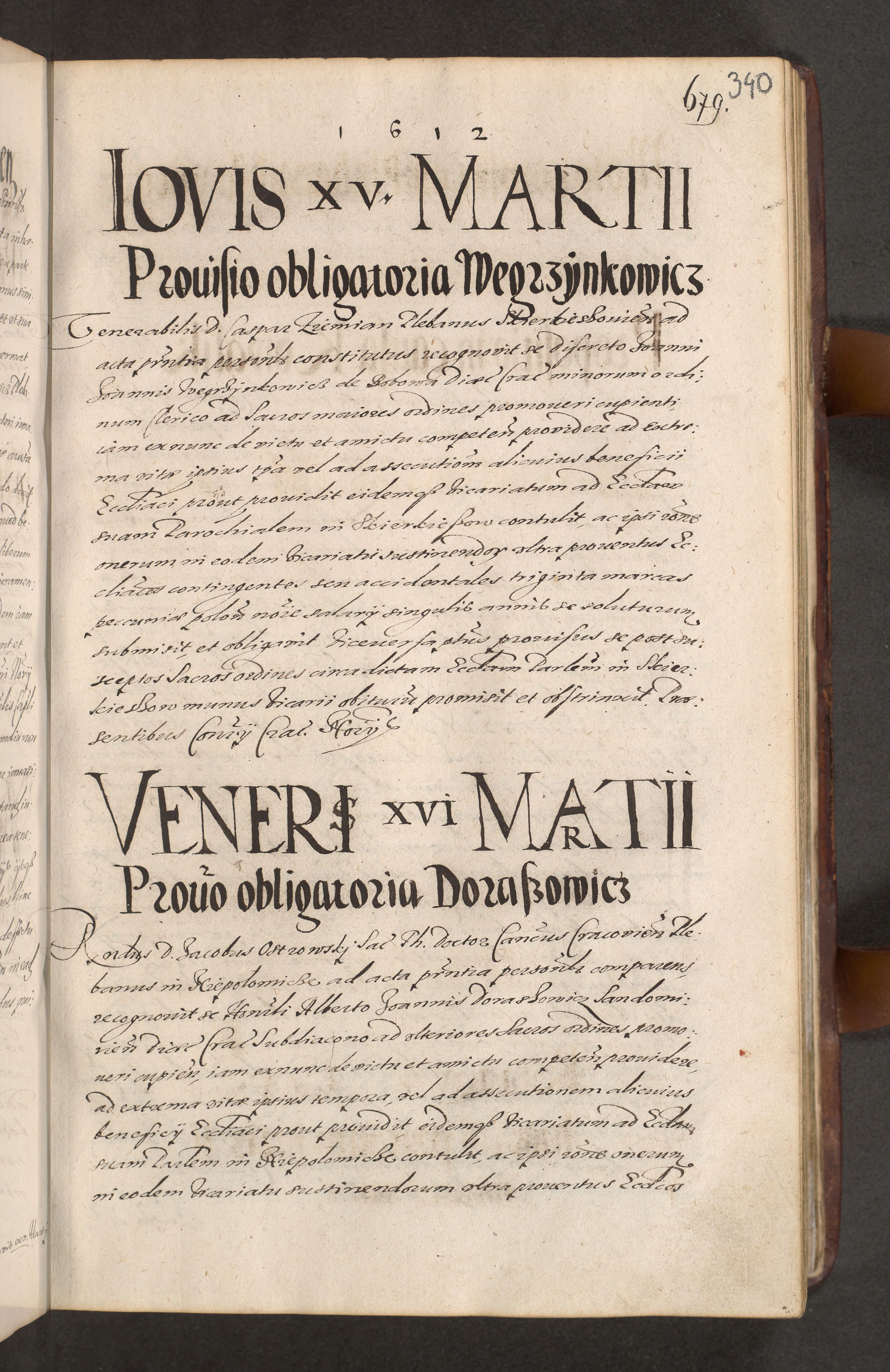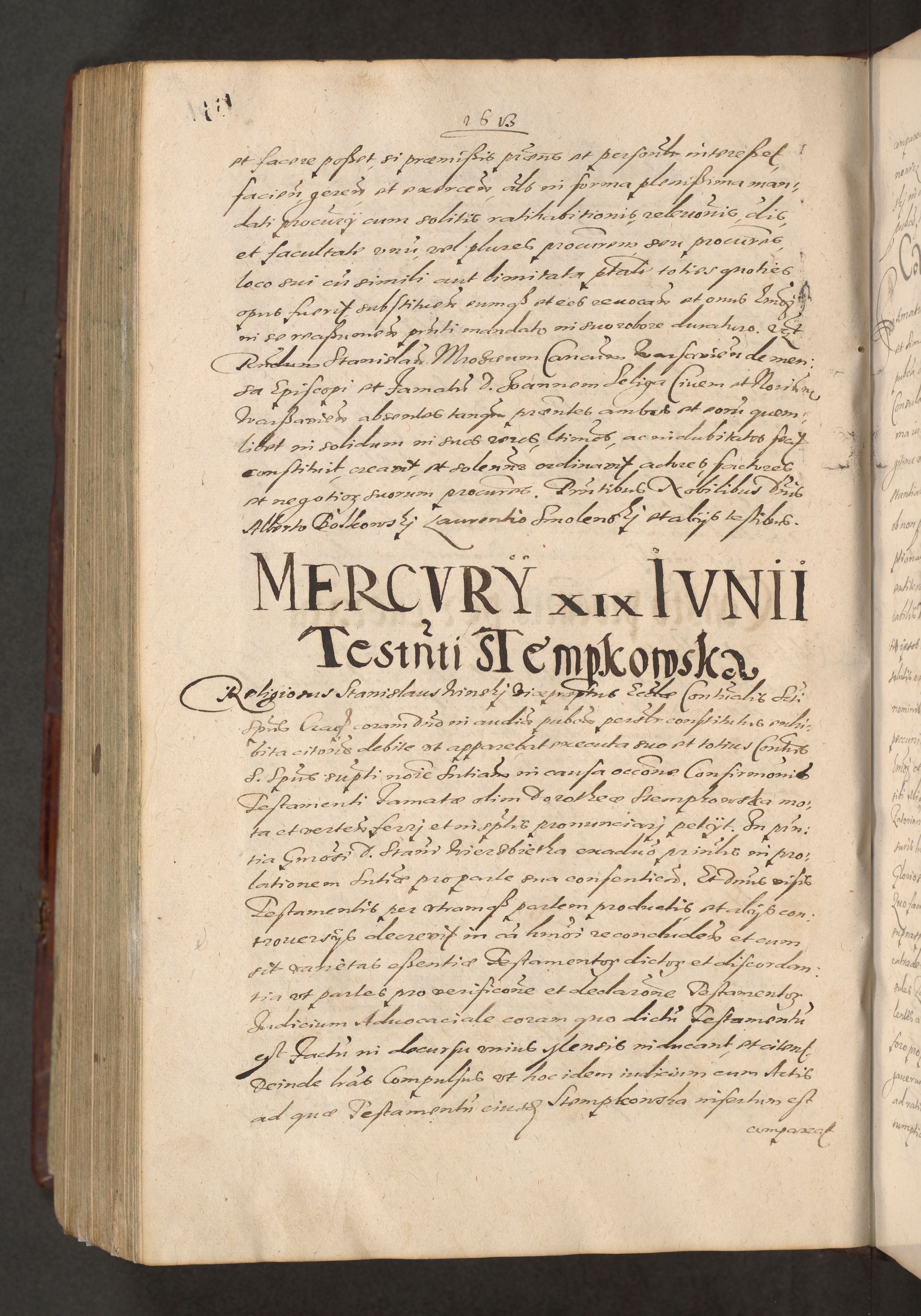 Acta actorum causarum sententiarum tam diffinitiuarum quam interloquutorisrum decretorum obligationum quietationum procuratorum constitutionum etc. etc. coram Reverendo Domino Paulo Dembski Dei et Apostolice Sedis Gratia Episcopalo Dicensis Suffraganeo Canonico Vicario in Spiritualibus et Officiali Generali Cracoviensis ad Annum Domini Millesimum Sexcentesimum Undecimum cuius indictio octava pontificatus Sanctissimi Domini Nostri Domini Pauli Divina Providentia Papae Vti foeliciter continuantur