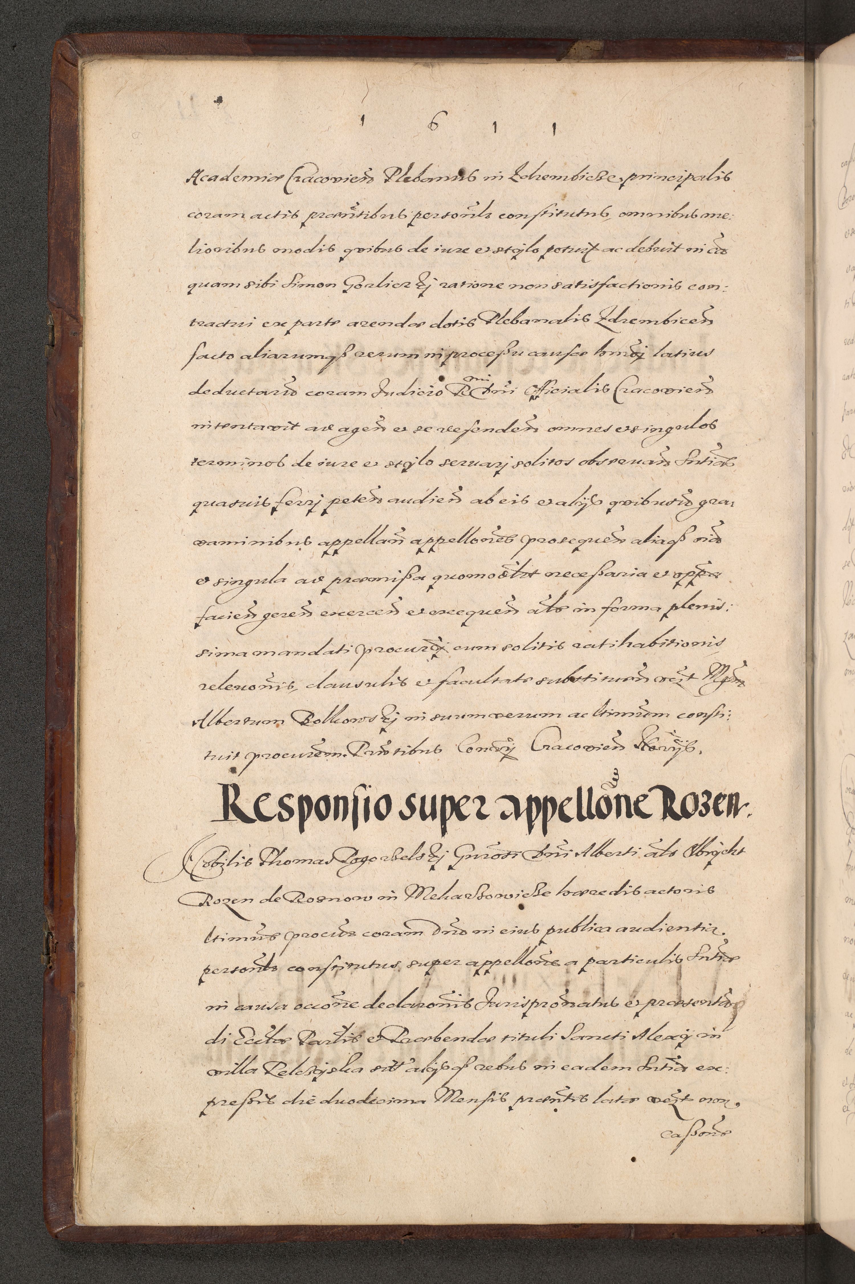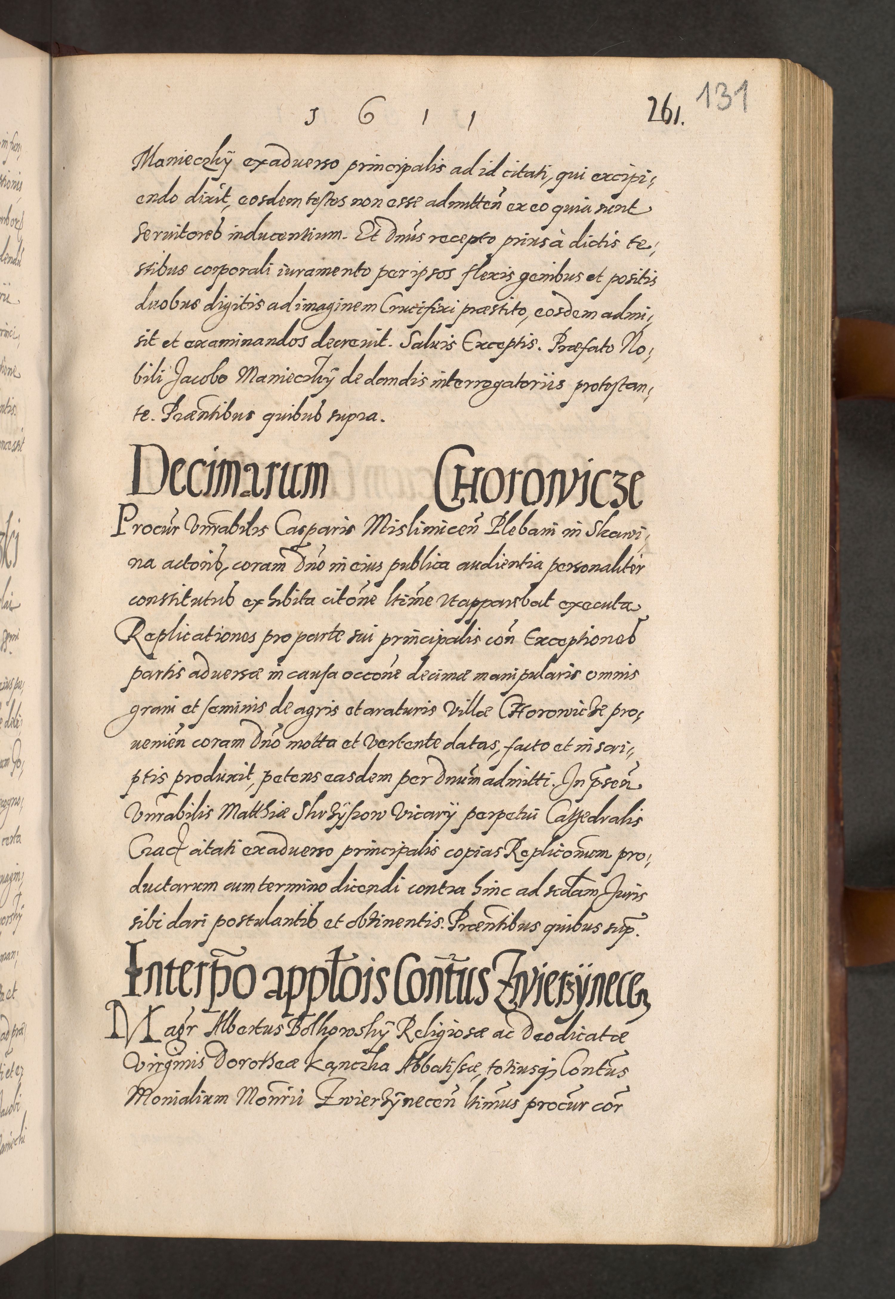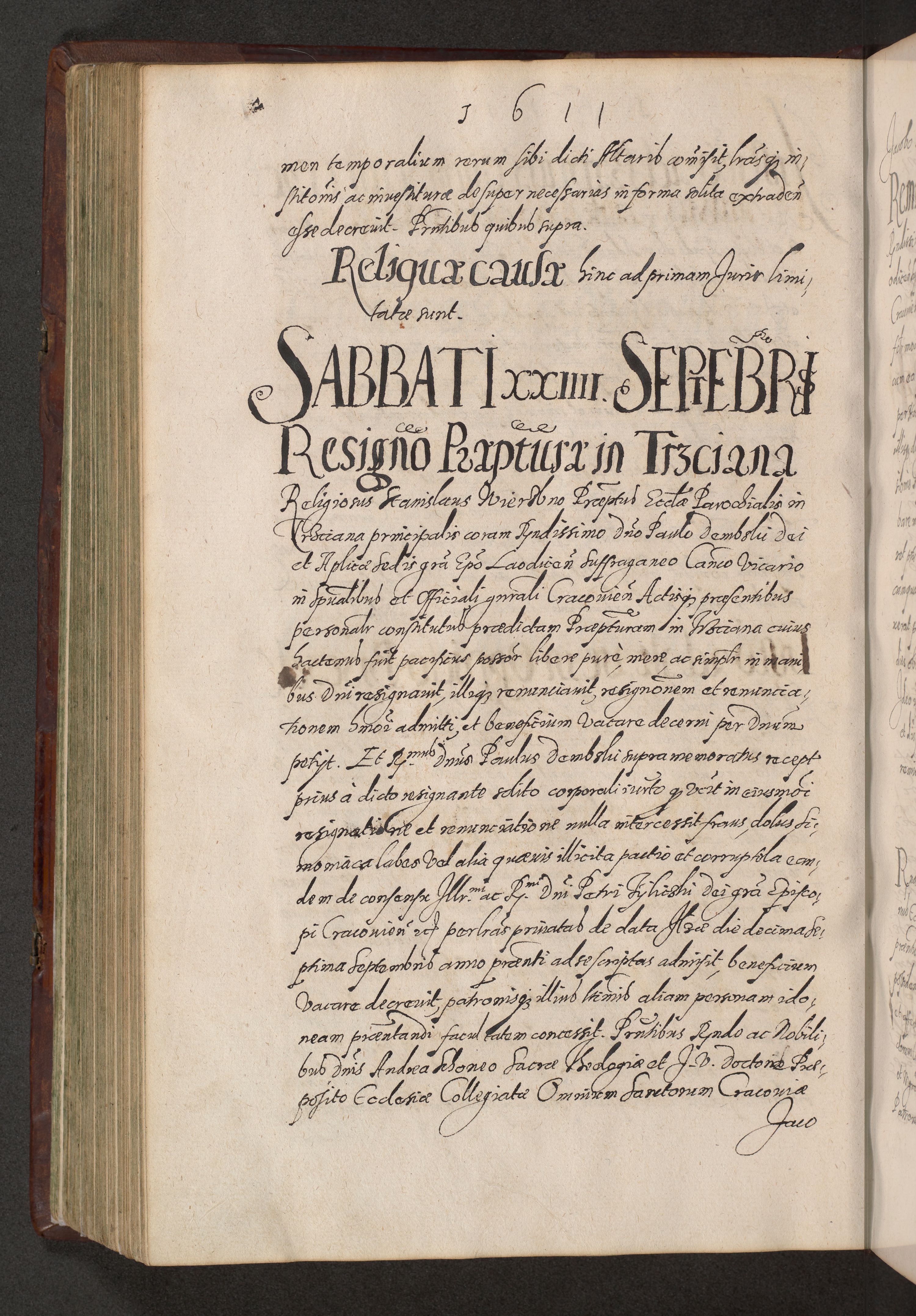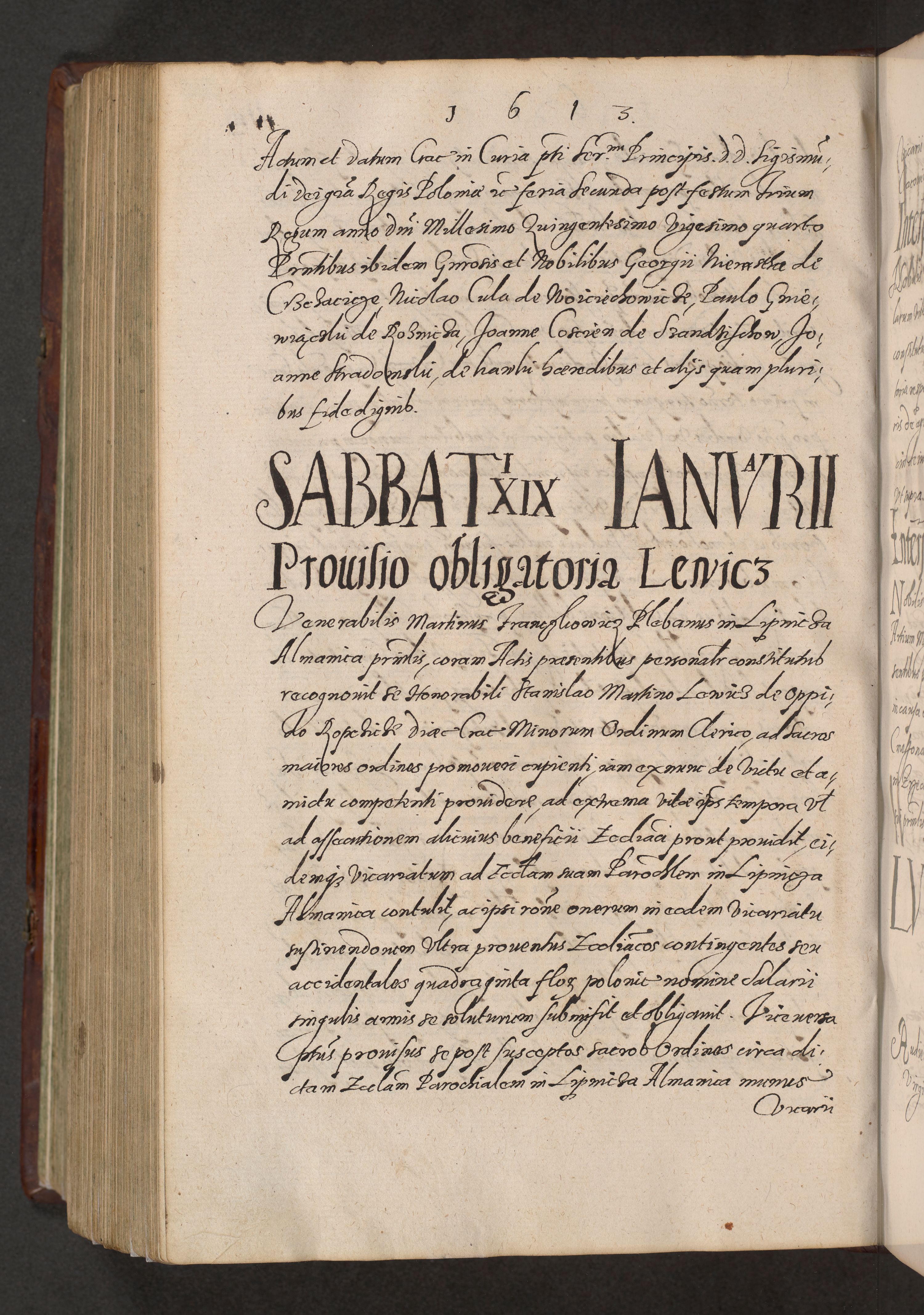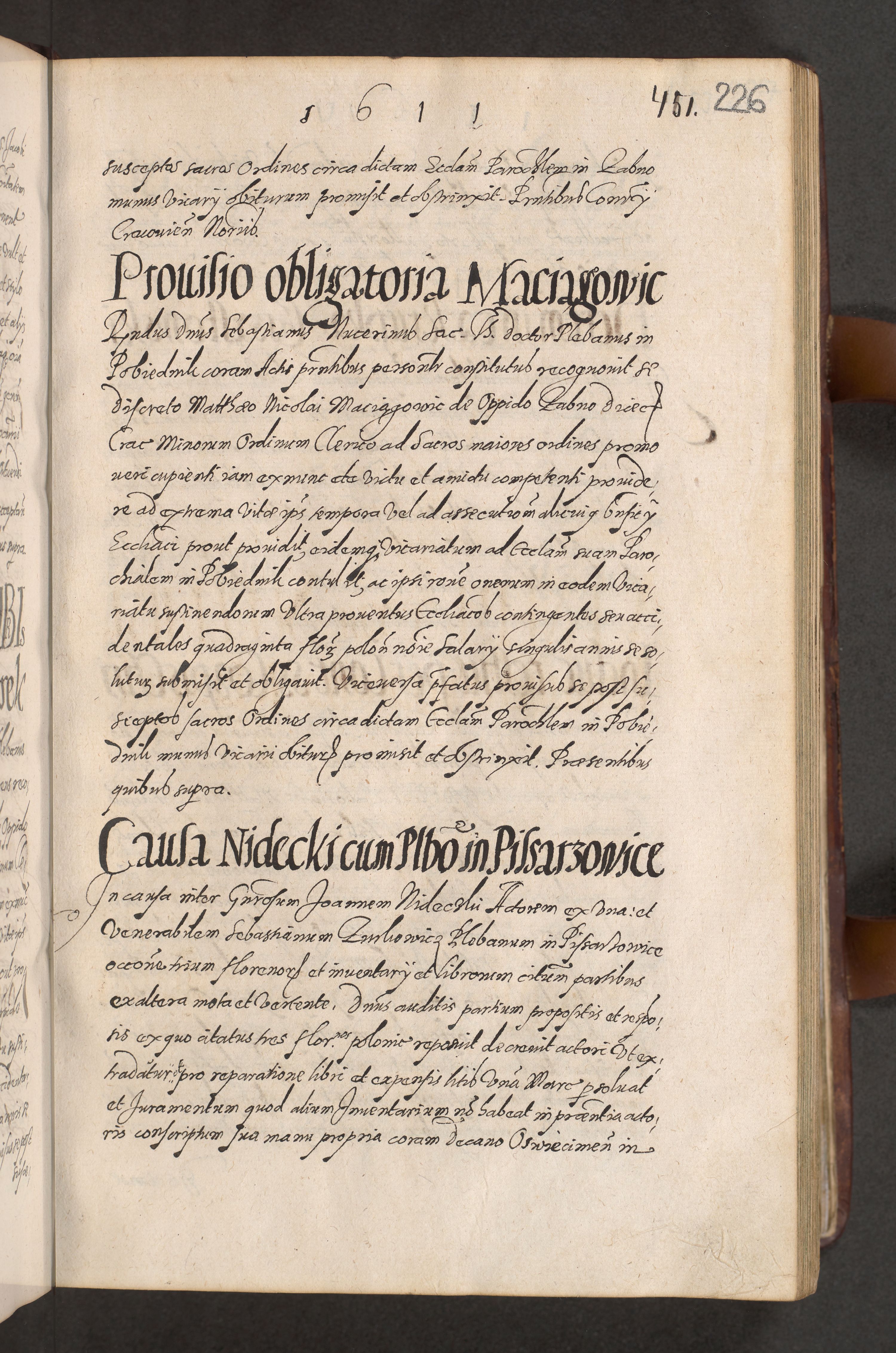 Acta actorum causarum sententiarum tam diffinitiuarum quam interloquutorisrum decretorum obligationum quietationum procuratorum constitutionum etc. etc. coram Reverendo Domino Paulo Dembski Dei et Apostolice Sedis Gratia Episcopalo Dicensis Suffraganeo Canonico Vicario in Spiritualibus et Officiali Generali Cracoviensis ad Annum Domini Millesimum Sexcentesimum Undecimum cuius indictio octava pontificatus Sanctissimi Domini Nostri Domini Pauli Divina Providentia Papae Vti foeliciter continuantur