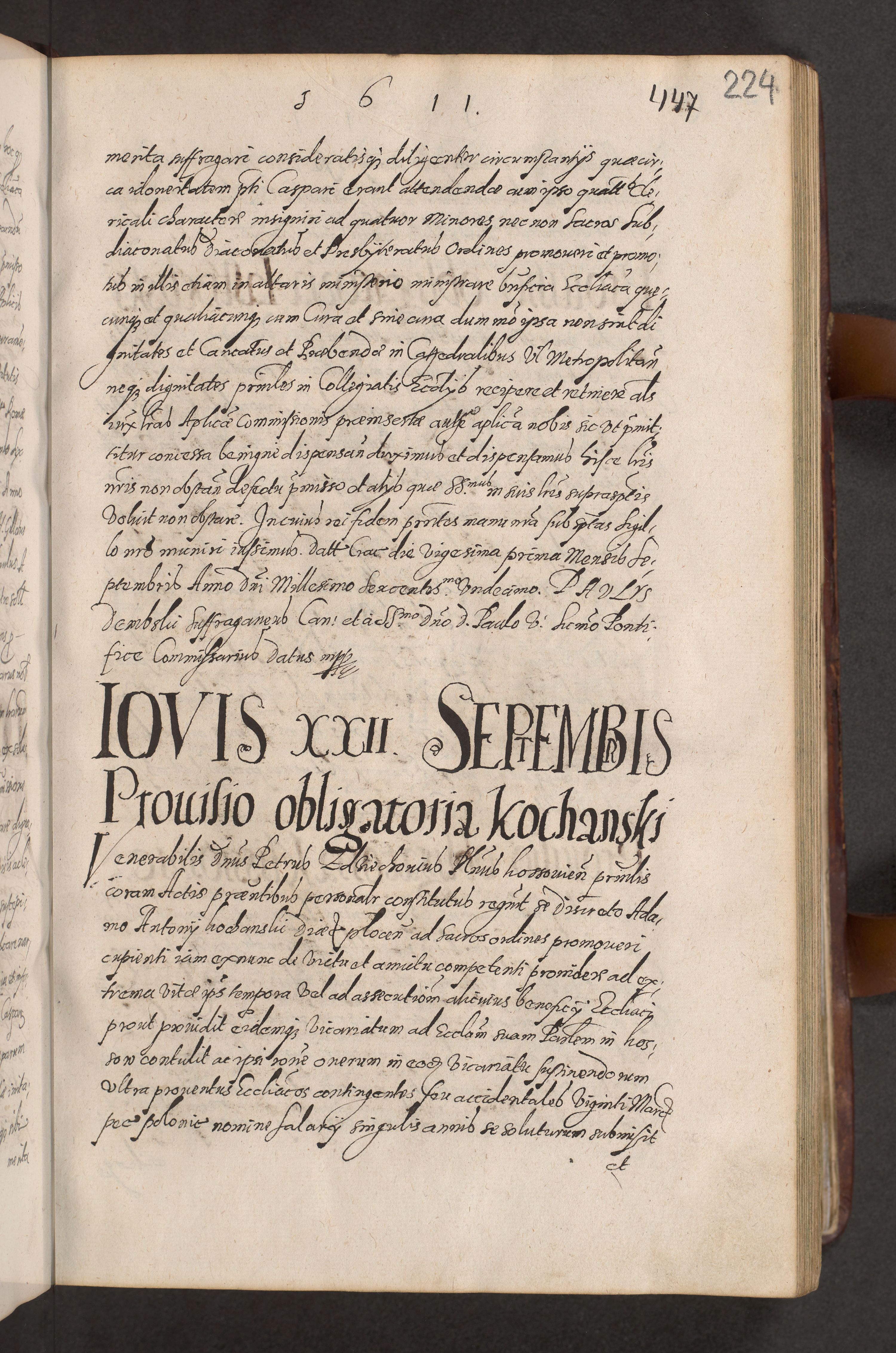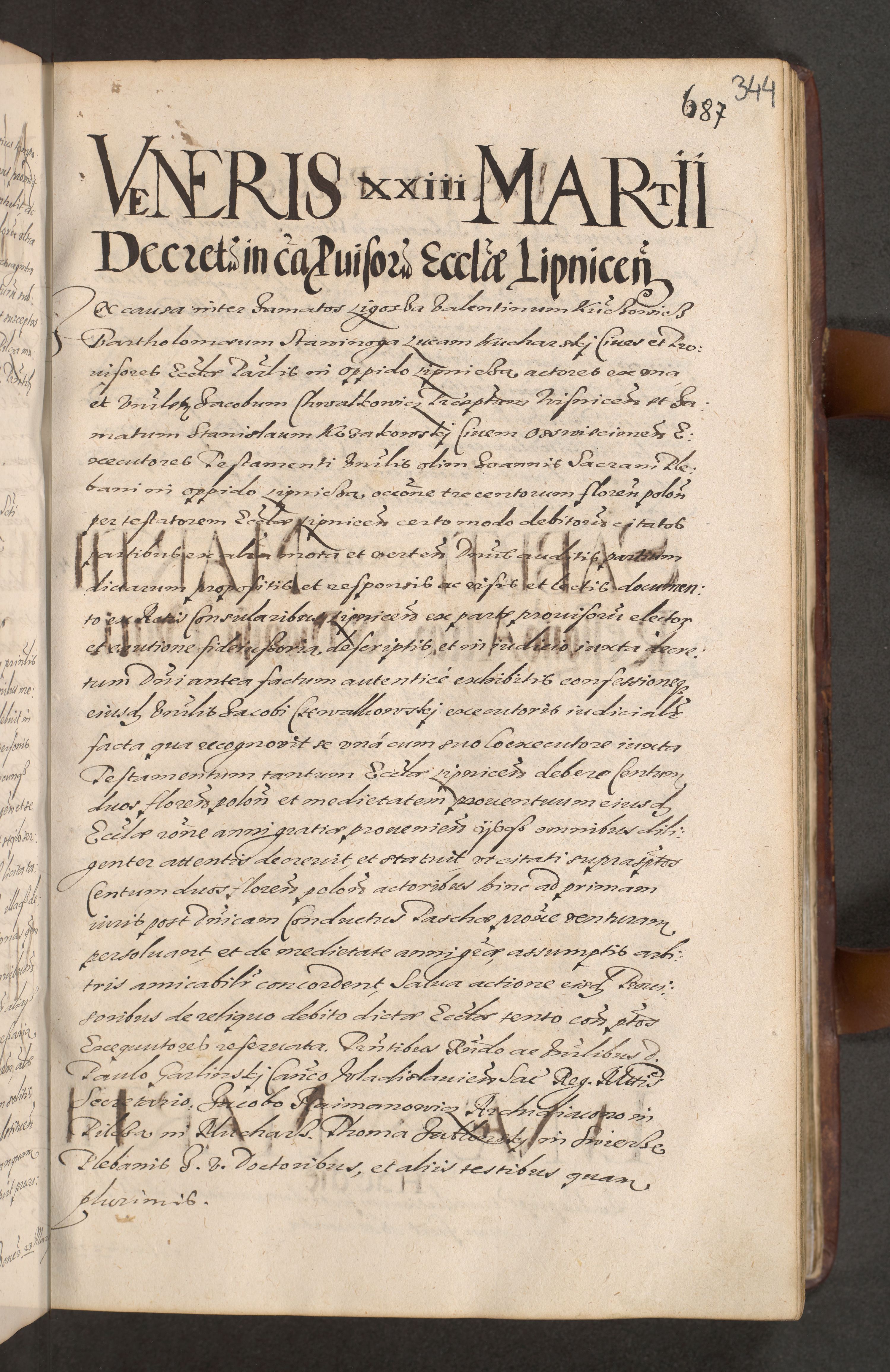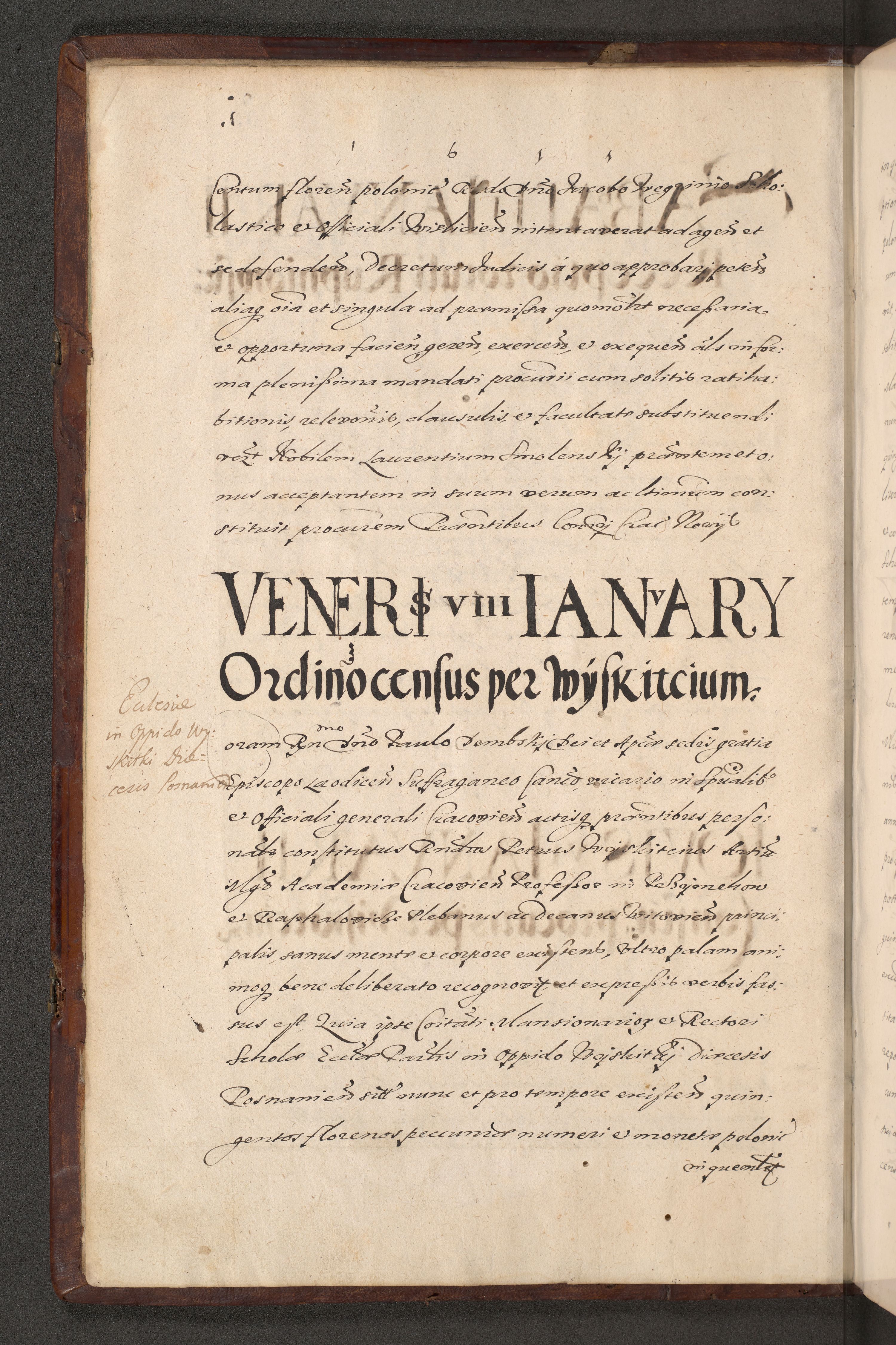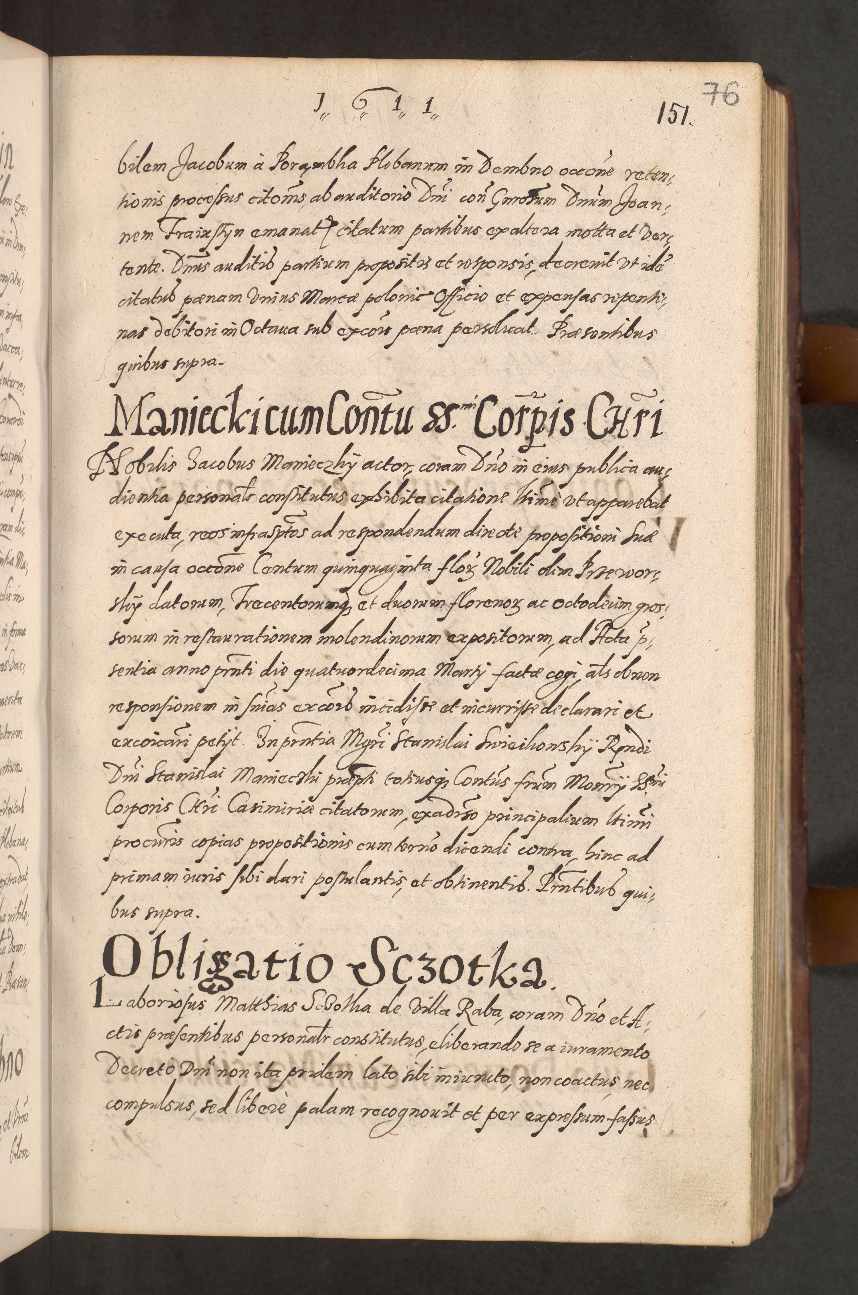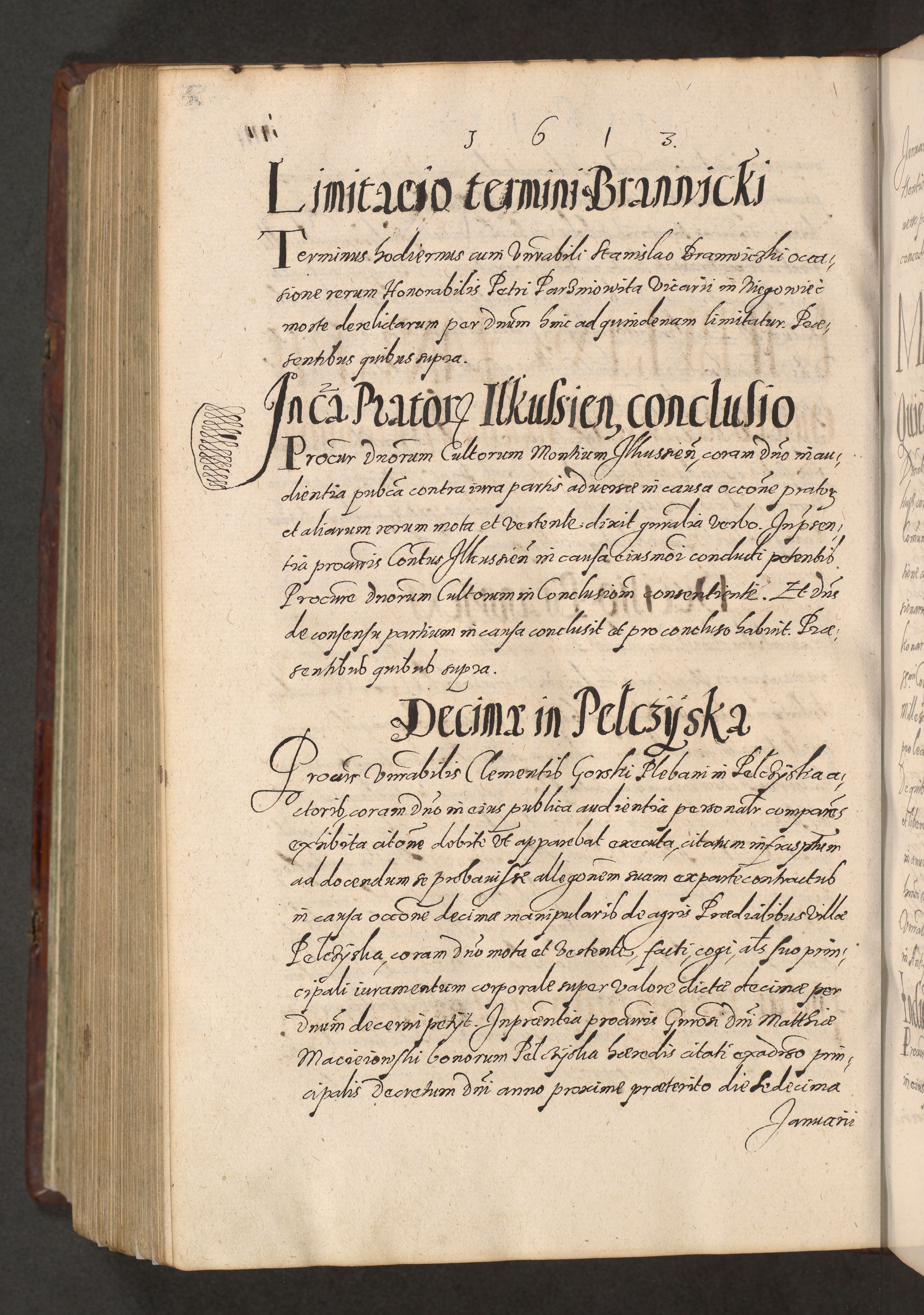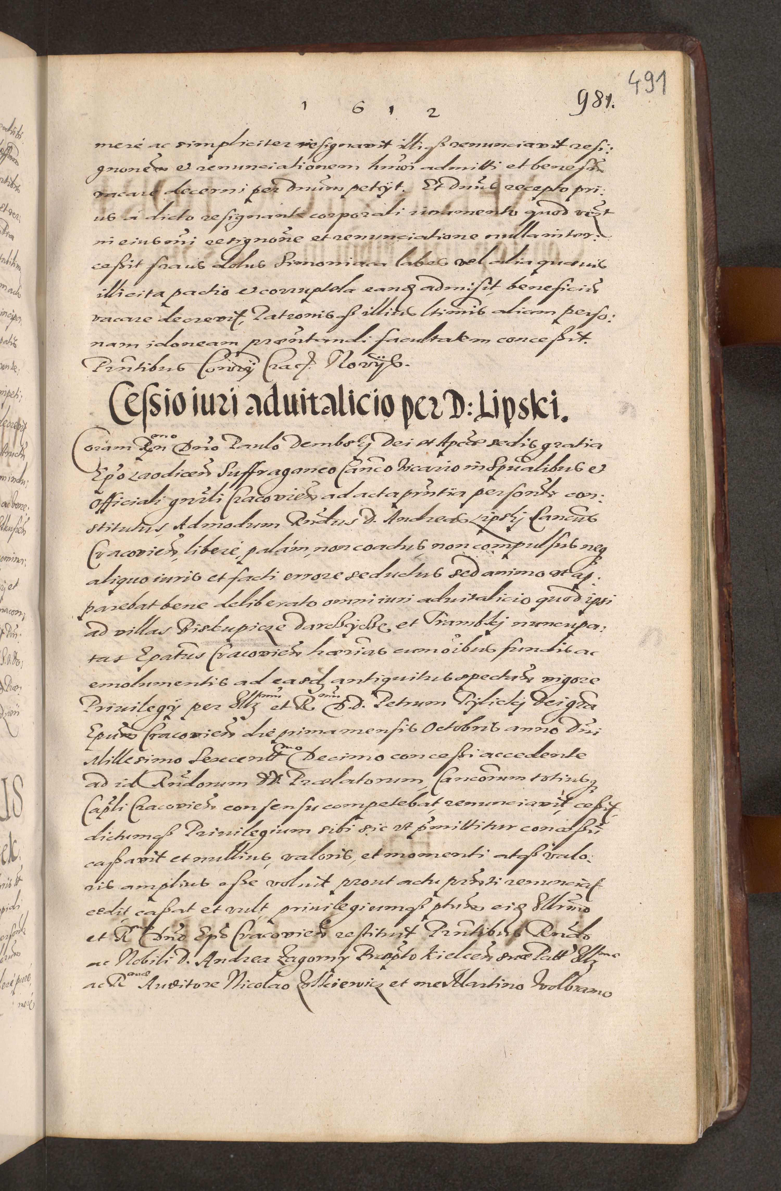 Acta actorum causarum sententiarum tam diffinitiuarum quam interloquutorisrum decretorum obligationum quietationum procuratorum constitutionum etc. etc. coram Reverendo Domino Paulo Dembski Dei et Apostolice Sedis Gratia Episcopalo Dicensis Suffraganeo Canonico Vicario in Spiritualibus et Officiali Generali Cracoviensis ad Annum Domini Millesimum Sexcentesimum Undecimum cuius indictio octava pontificatus Sanctissimi Domini Nostri Domini Pauli Divina Providentia Papae Vti foeliciter continuantur