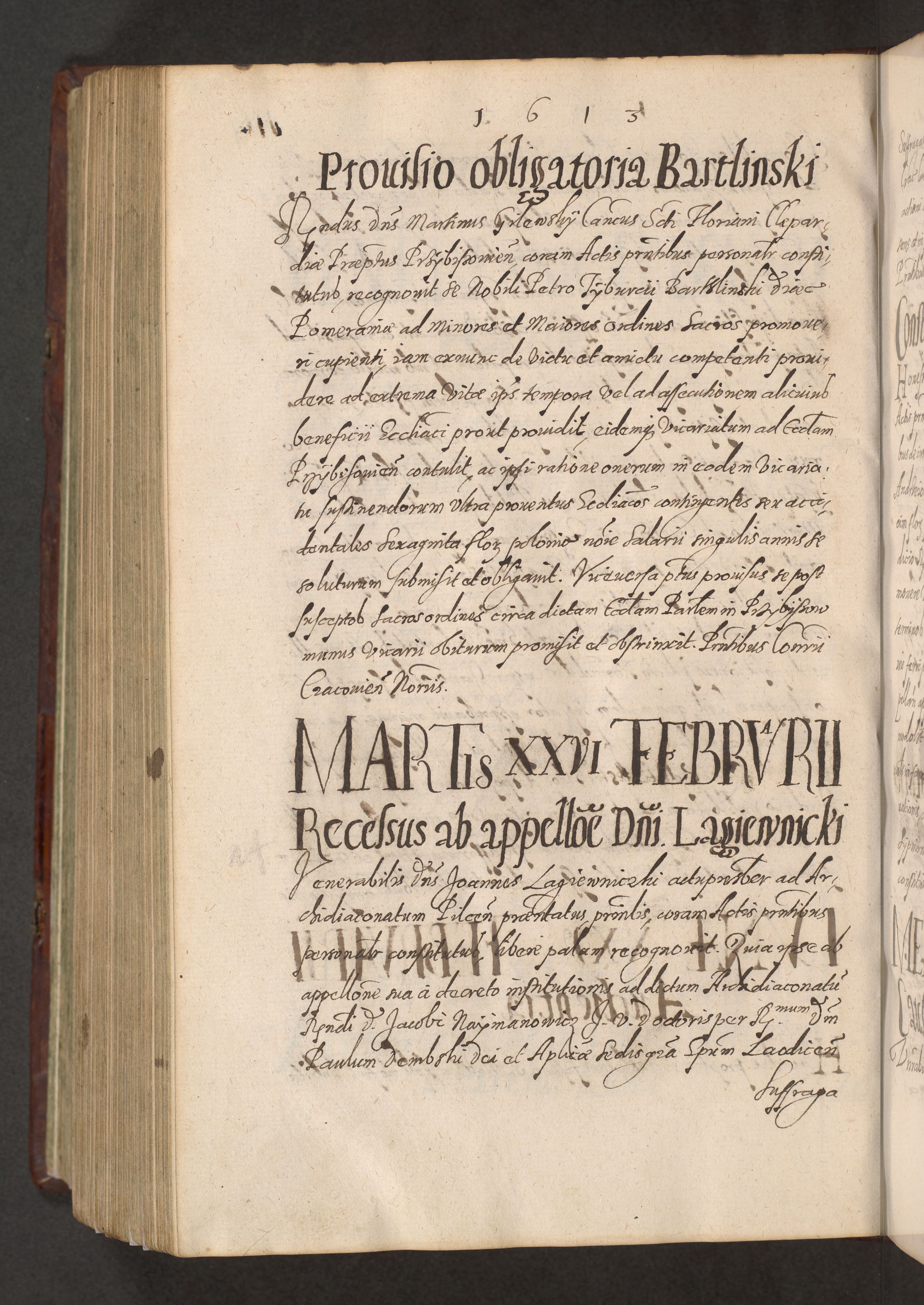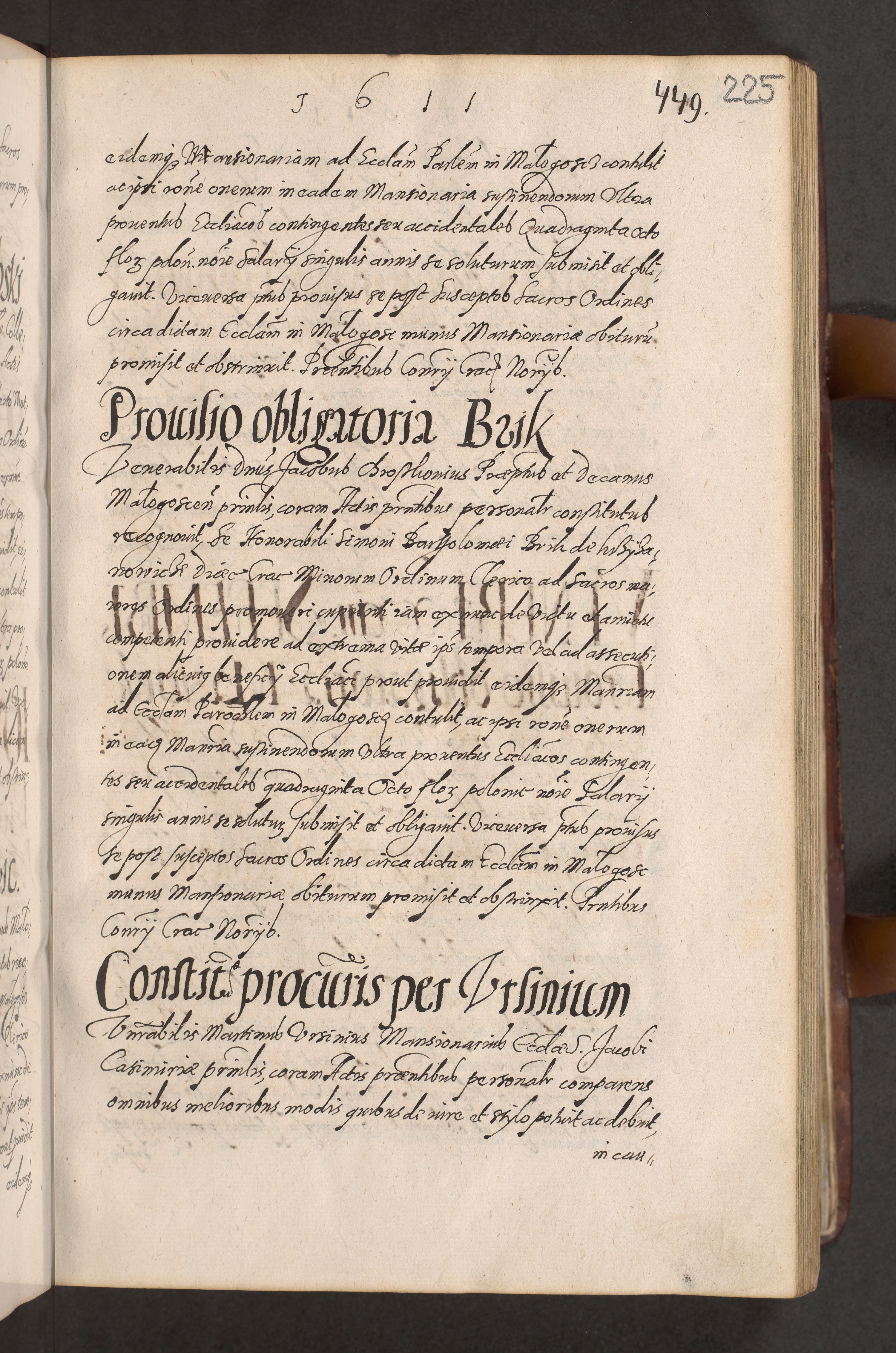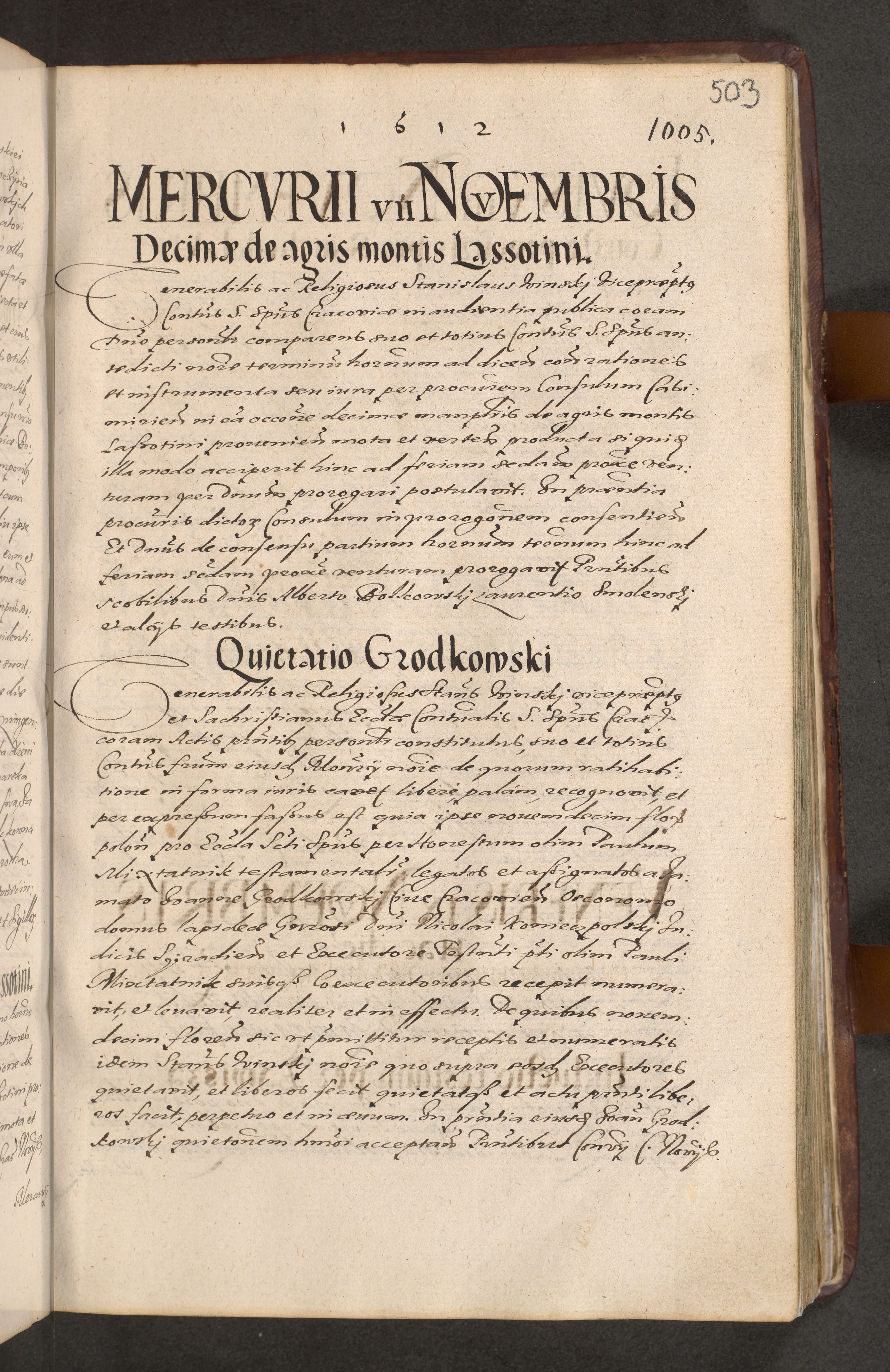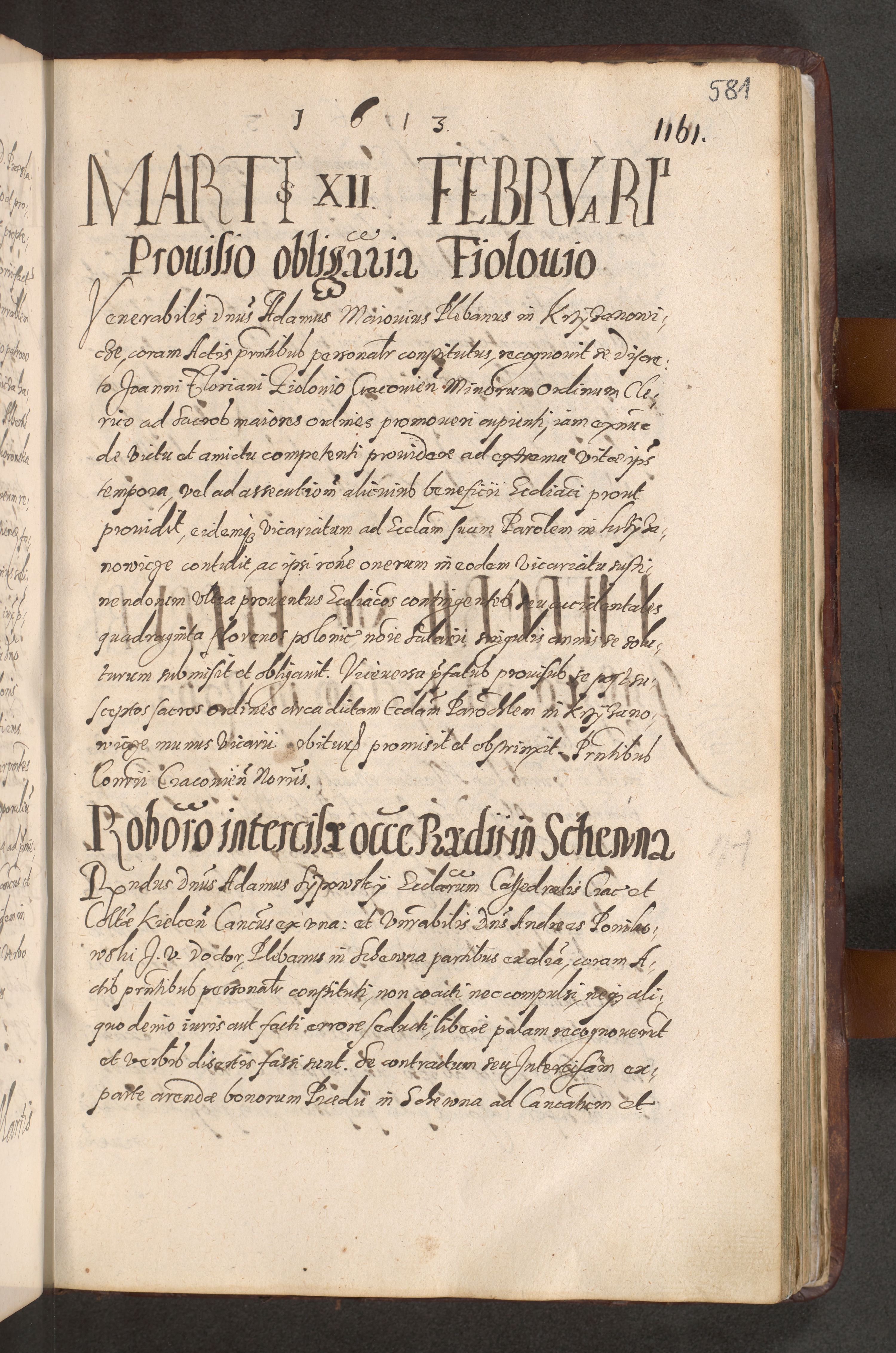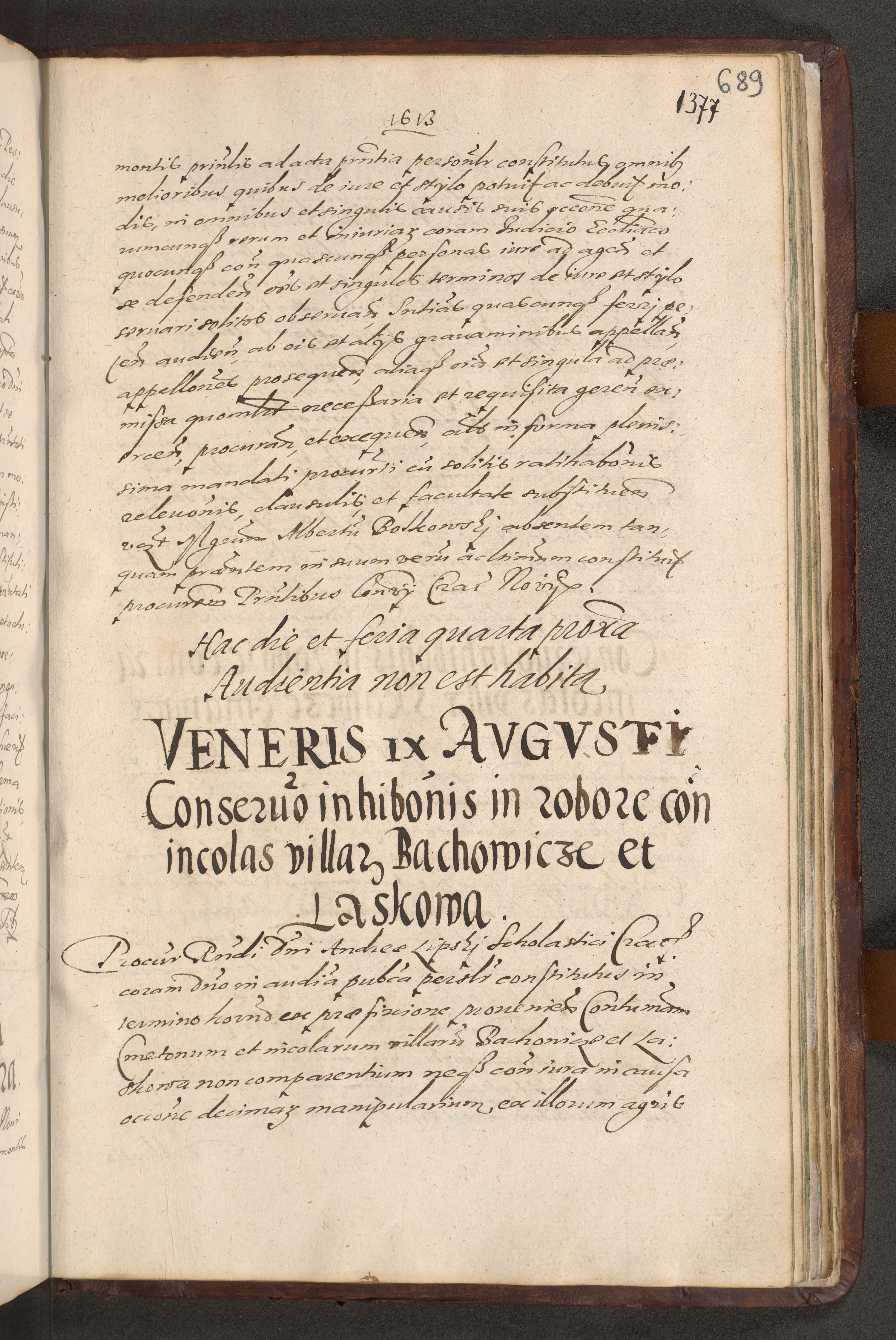 Acta actorum causarum sententiarum tam diffinitiuarum quam interloquutorisrum decretorum obligationum quietationum procuratorum constitutionum etc. etc. coram Reverendo Domino Paulo Dembski Dei et Apostolice Sedis Gratia Episcopalo Dicensis Suffraganeo Canonico Vicario in Spiritualibus et Officiali Generali Cracoviensis ad Annum Domini Millesimum Sexcentesimum Undecimum cuius indictio octava pontificatus Sanctissimi Domini Nostri Domini Pauli Divina Providentia Papae Vti foeliciter continuantur