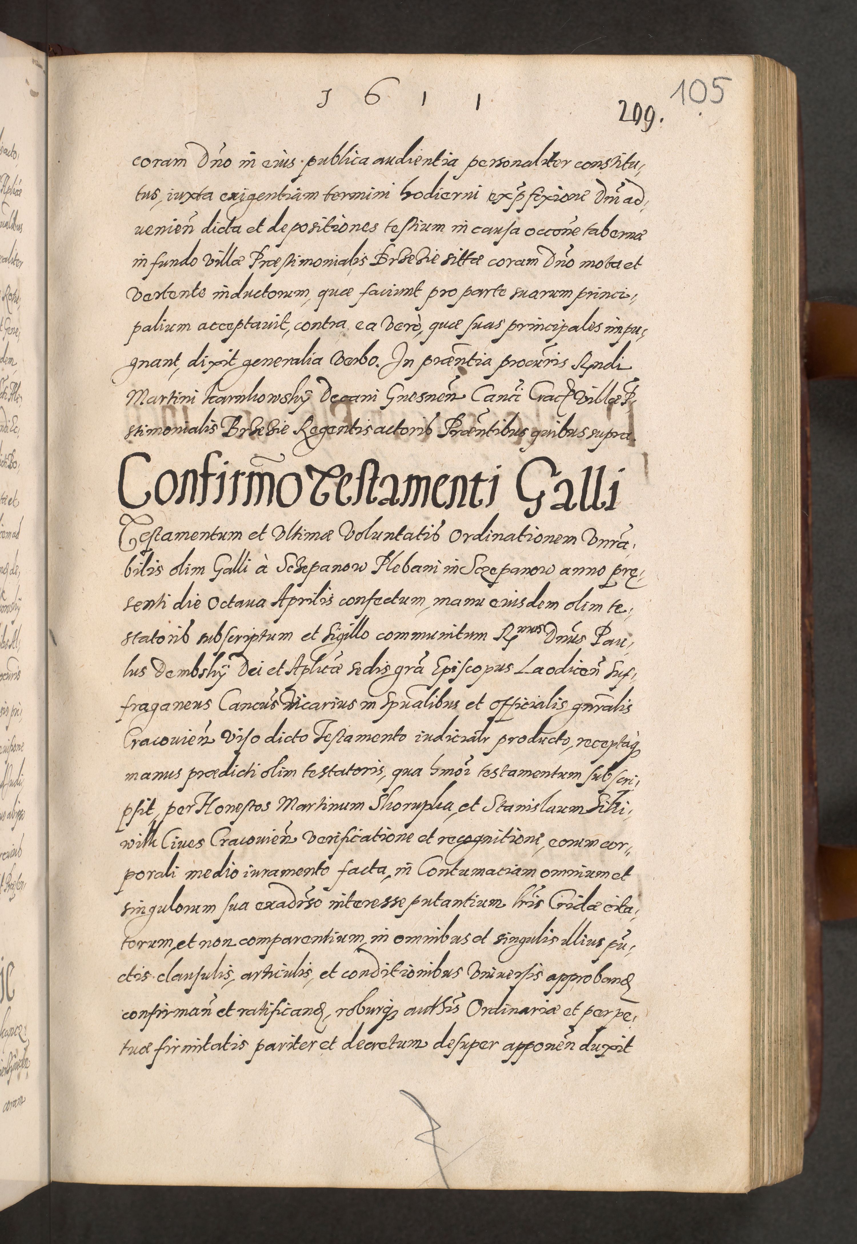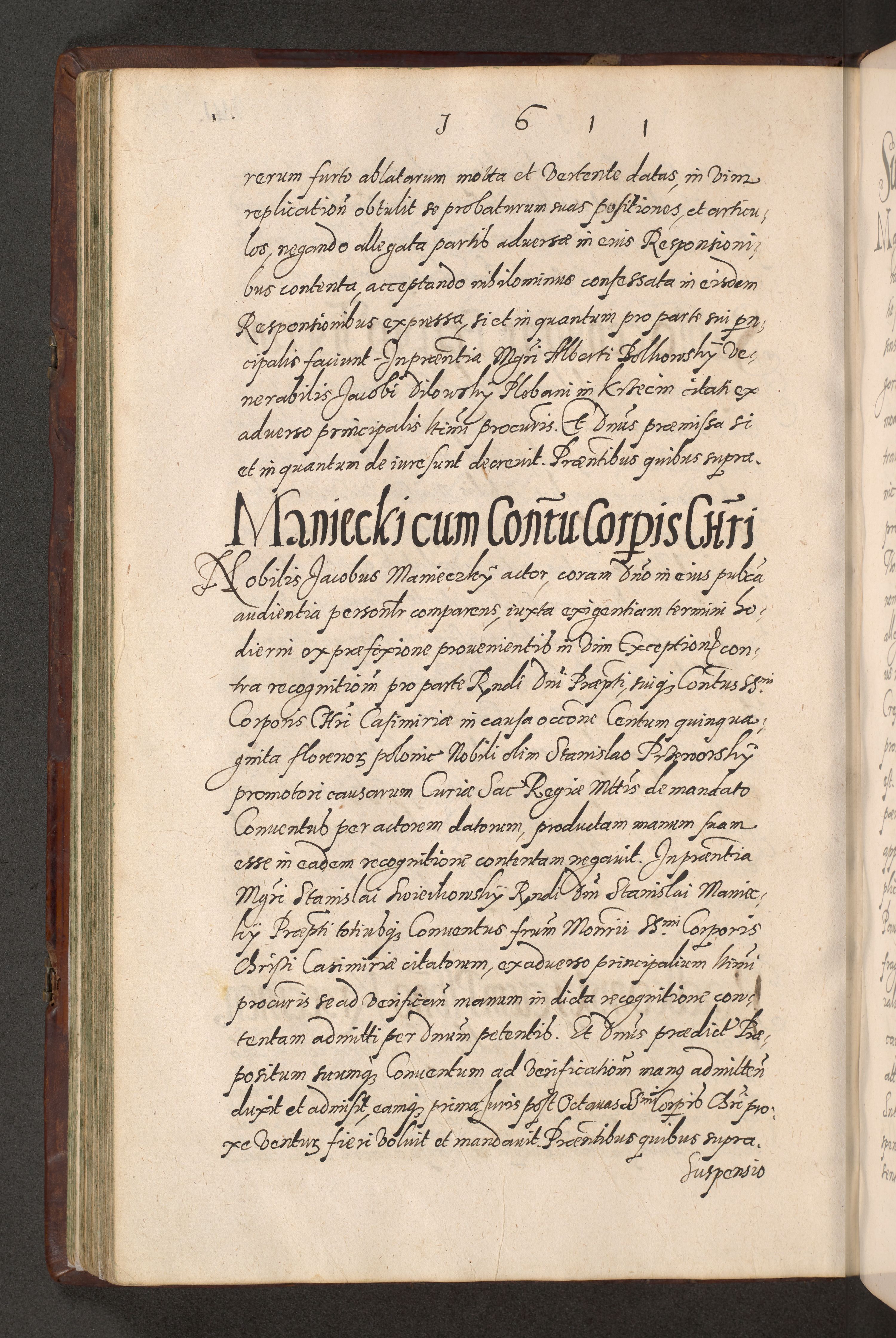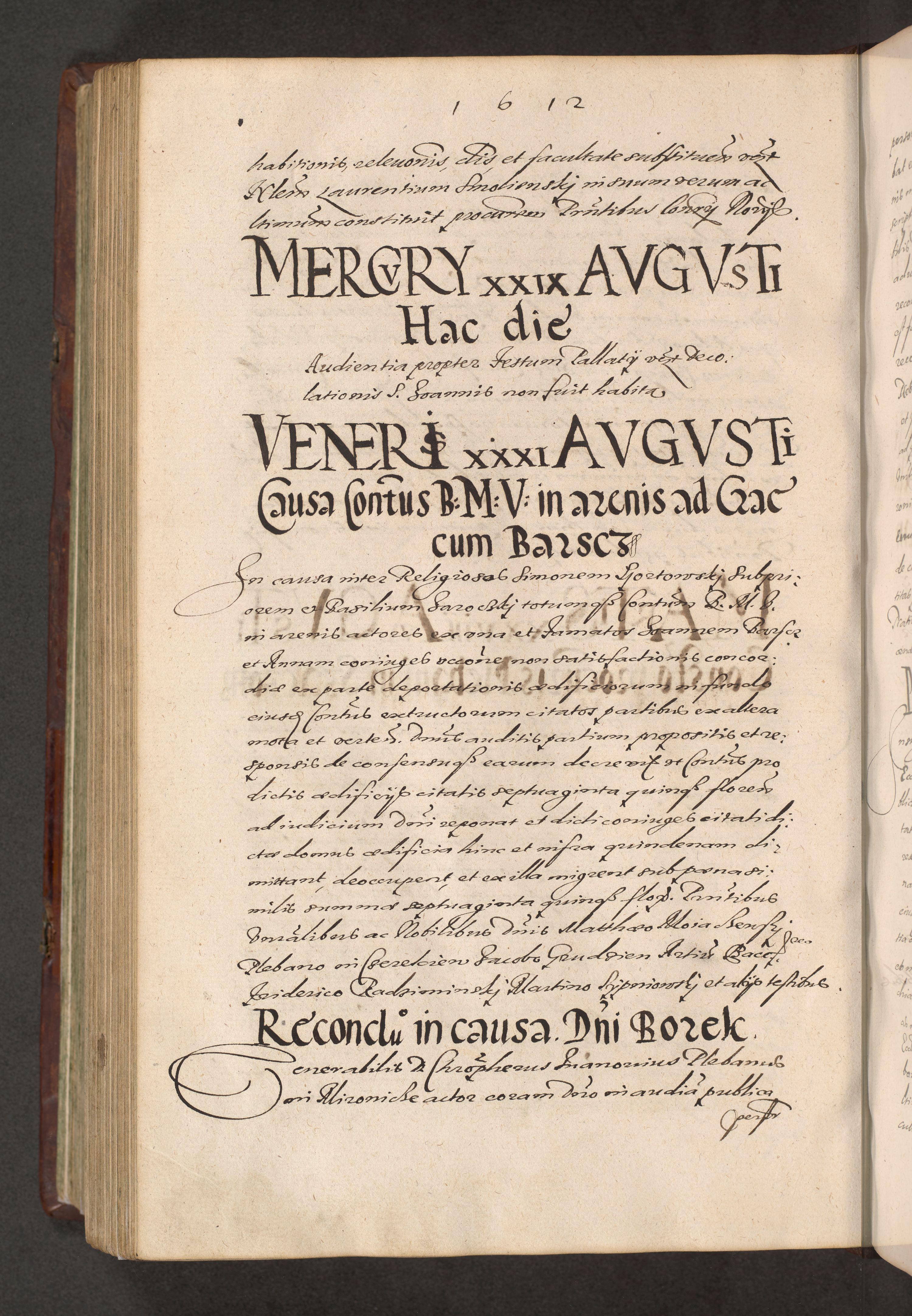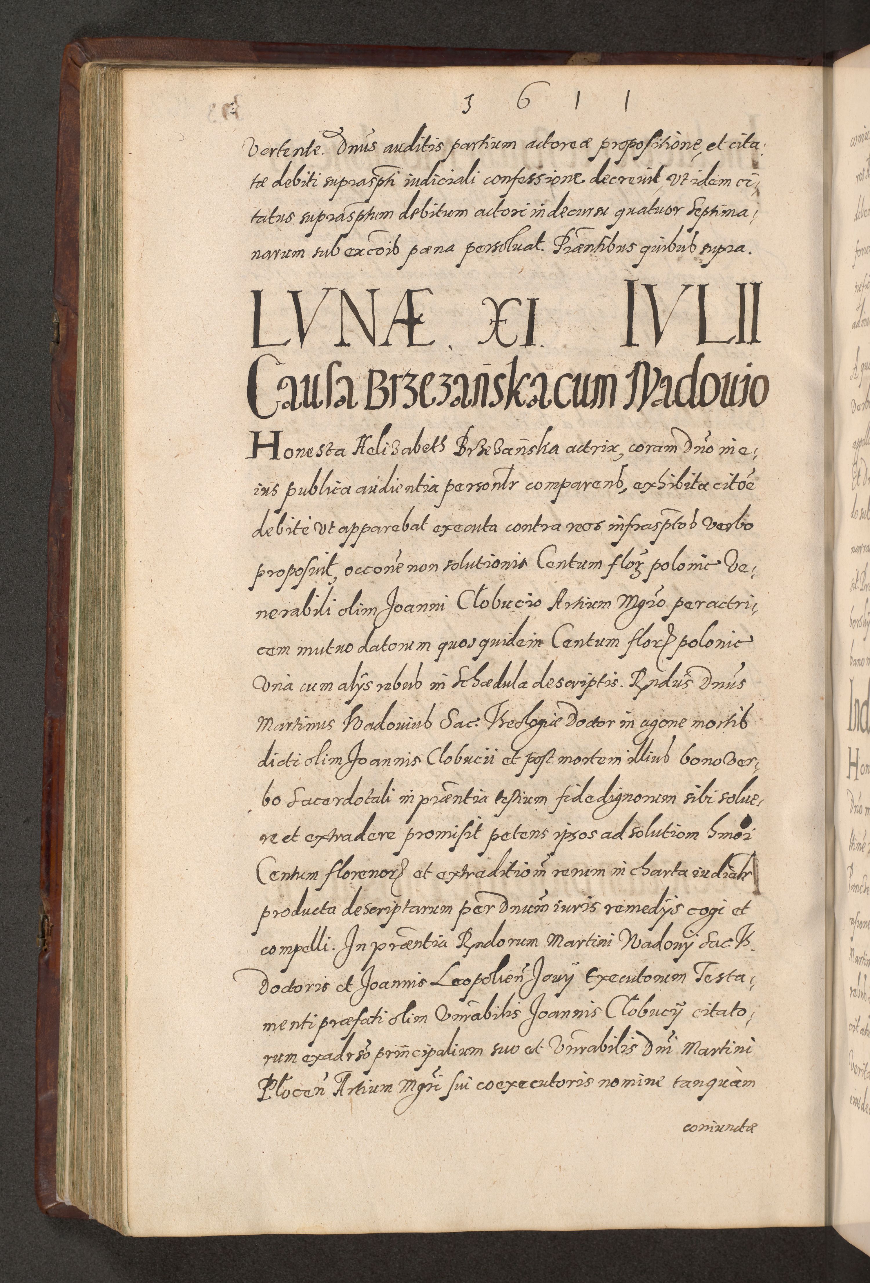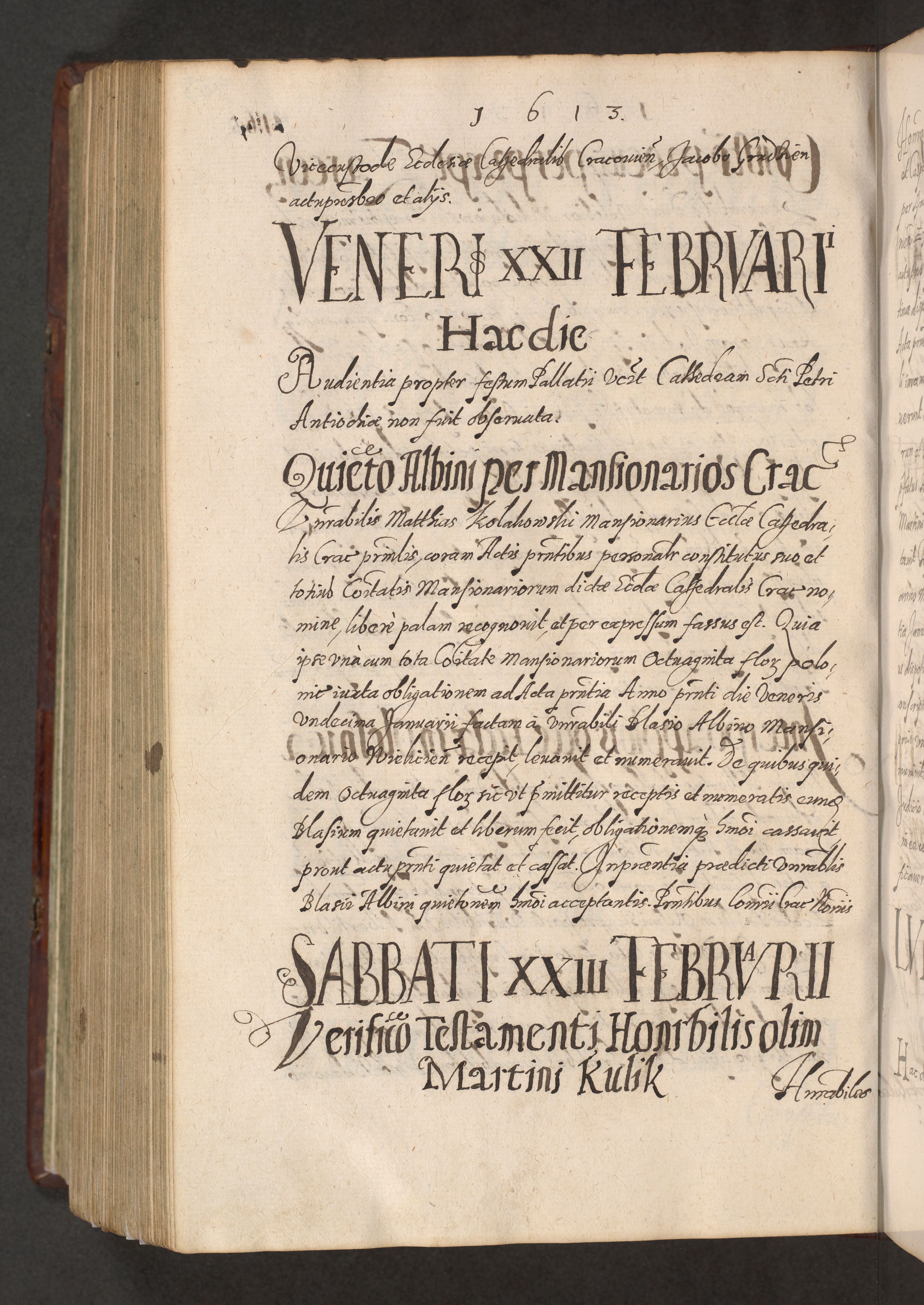 Acta actorum causarum sententiarum tam diffinitiuarum quam interloquutorisrum decretorum obligationum quietationum procuratorum constitutionum etc. etc. coram Reverendo Domino Paulo Dembski Dei et Apostolice Sedis Gratia Episcopalo Dicensis Suffraganeo Canonico Vicario in Spiritualibus et Officiali Generali Cracoviensis ad Annum Domini Millesimum Sexcentesimum Undecimum cuius indictio octava pontificatus Sanctissimi Domini Nostri Domini Pauli Divina Providentia Papae Vti foeliciter continuantur