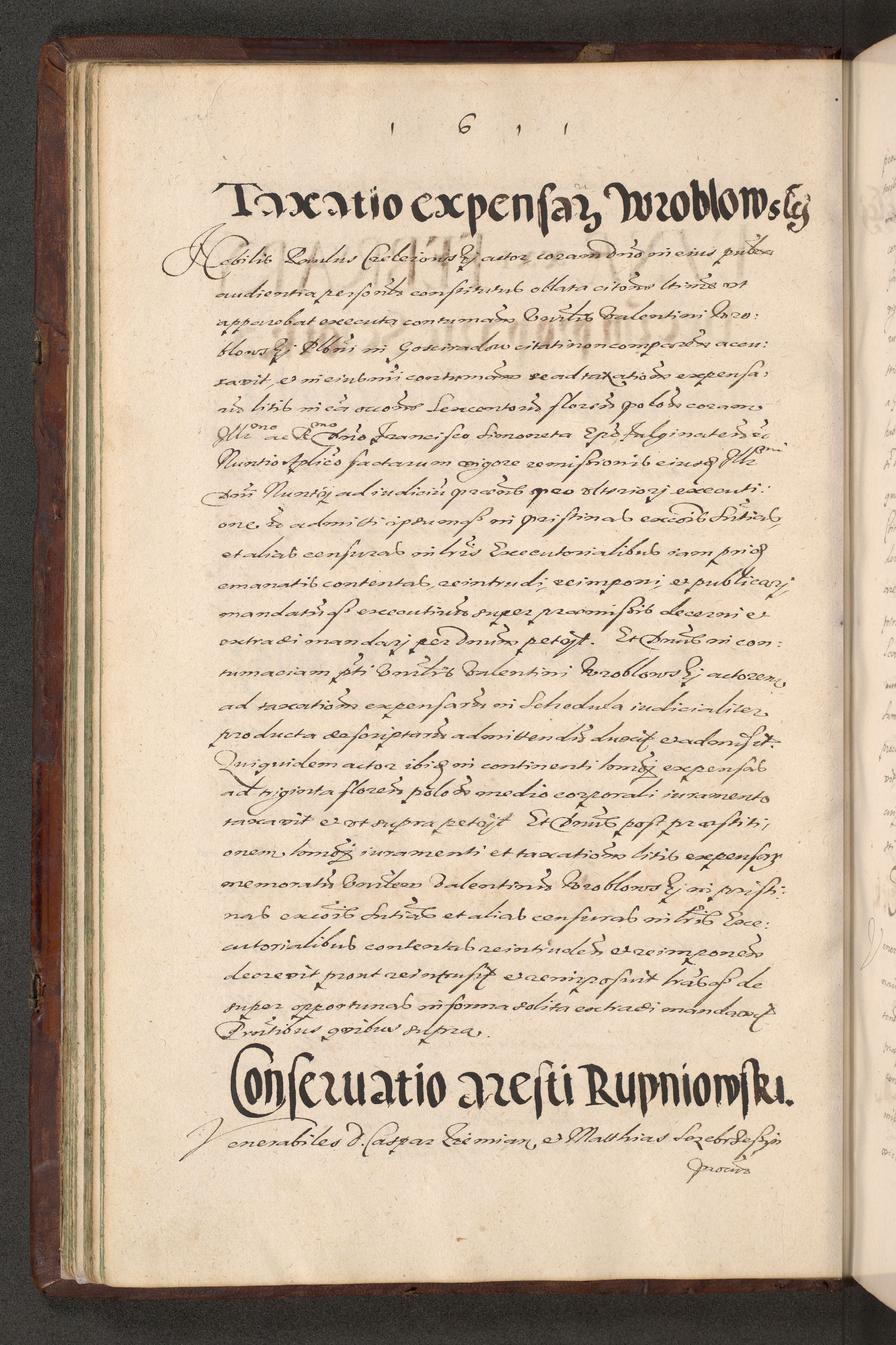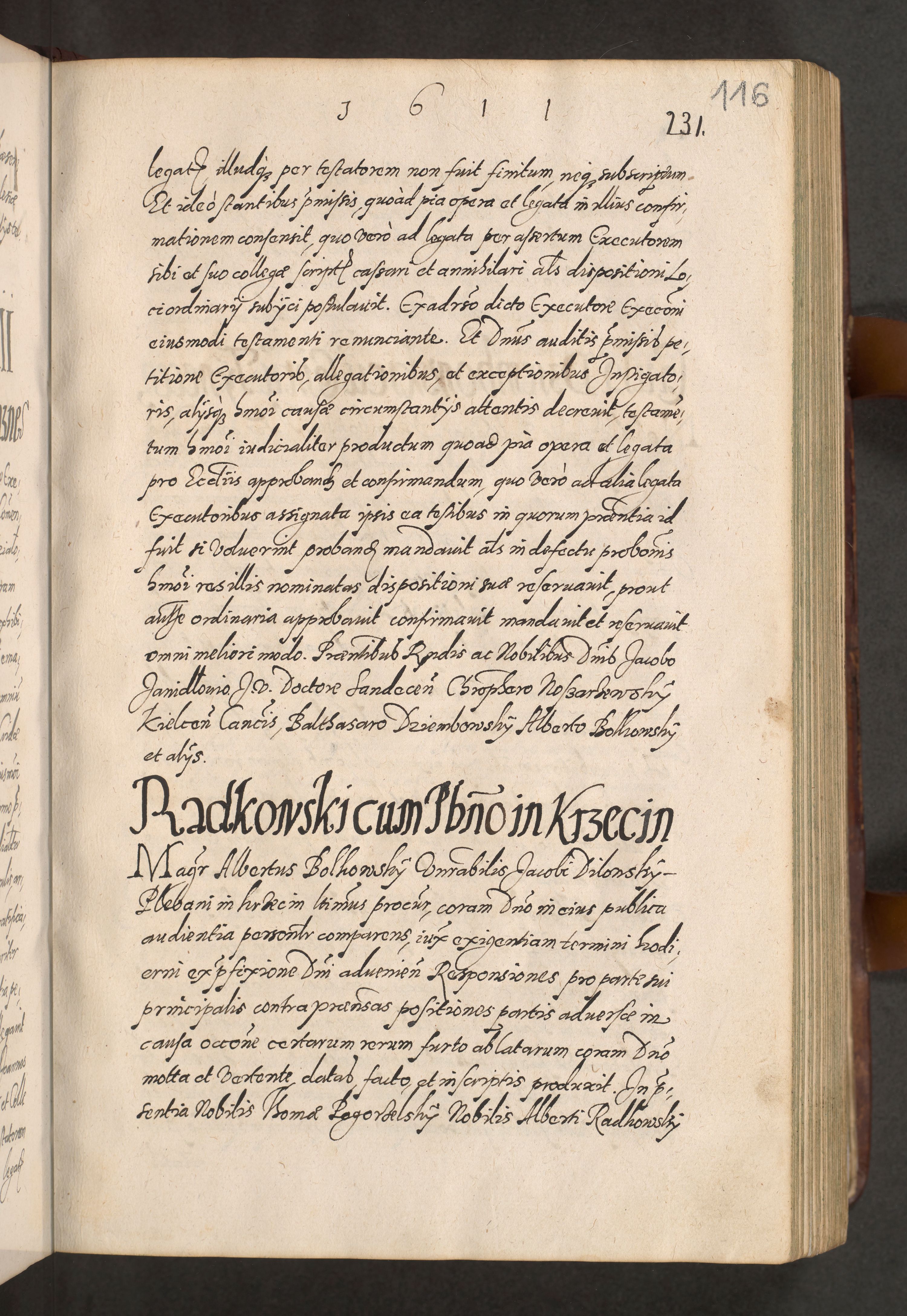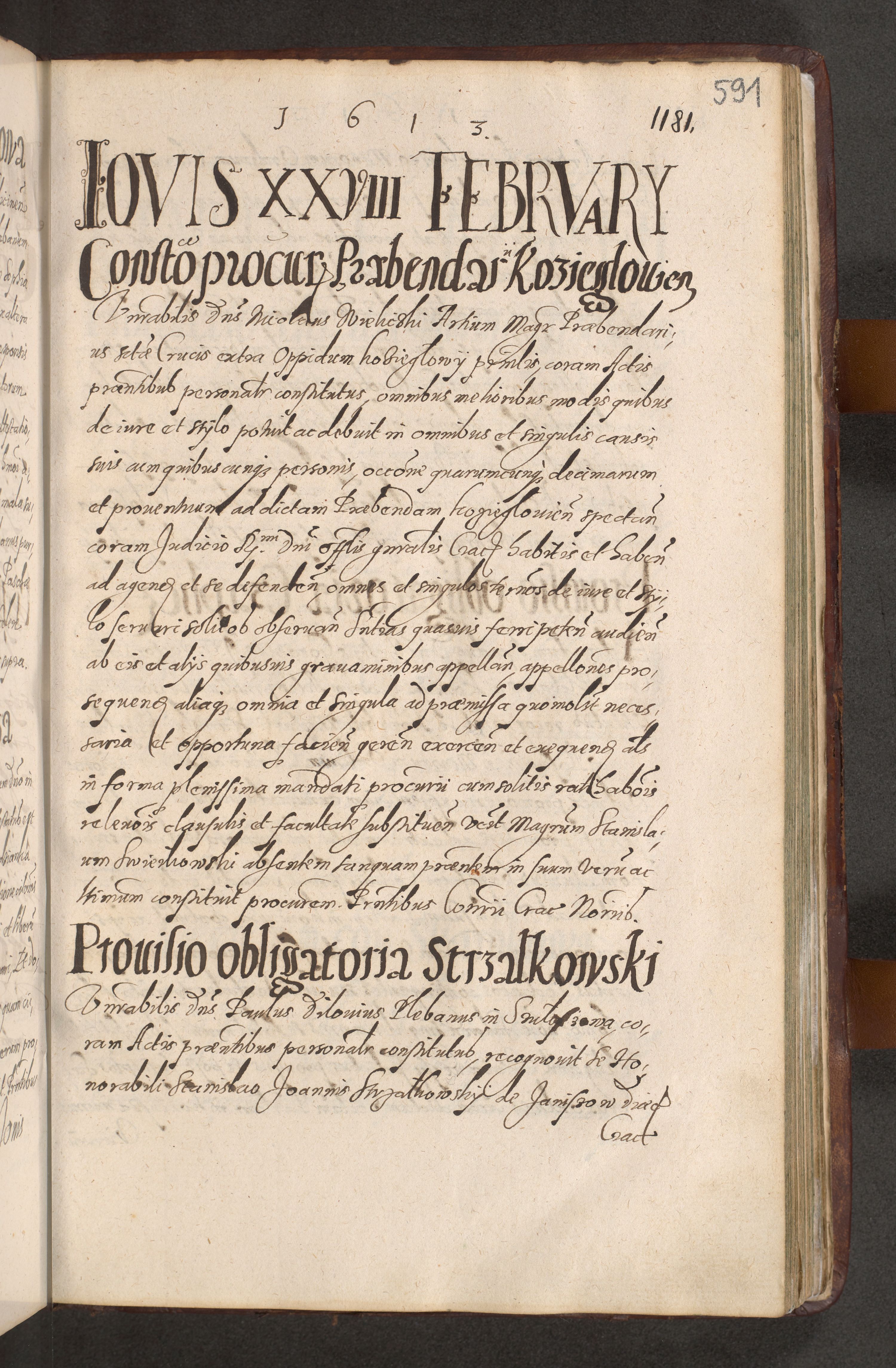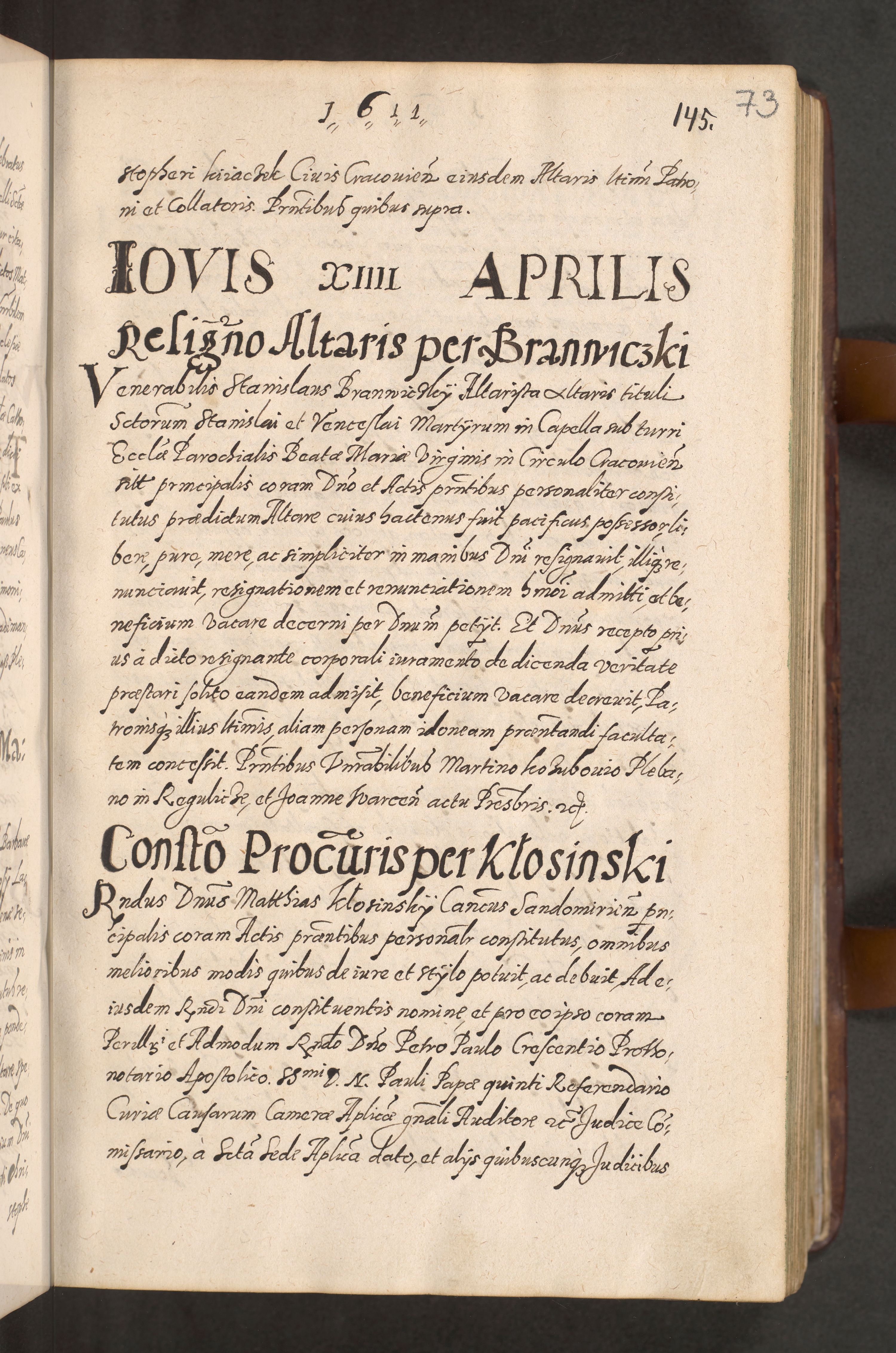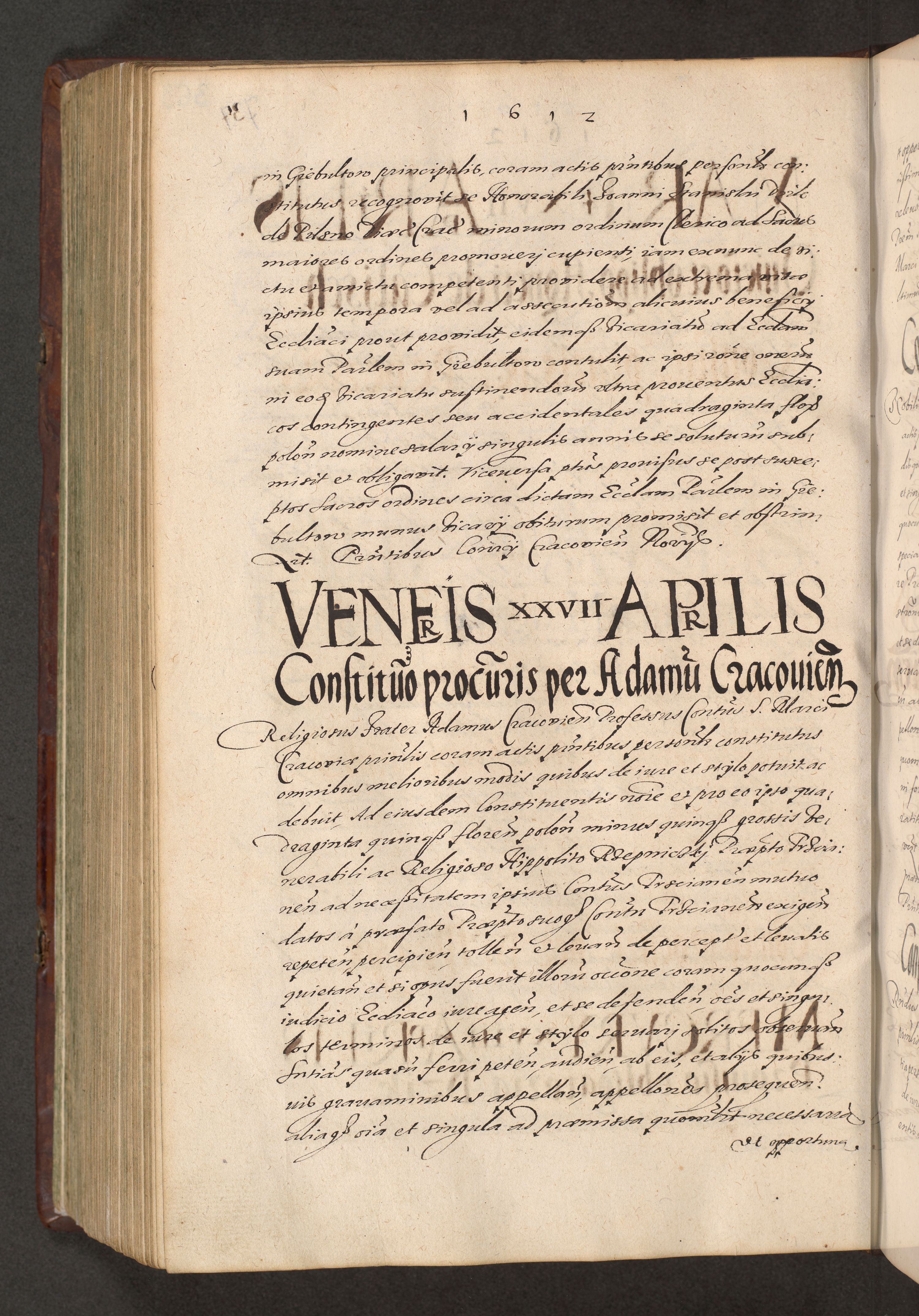 Acta actorum causarum sententiarum tam diffinitiuarum quam interloquutorisrum decretorum obligationum quietationum procuratorum constitutionum etc. etc. coram Reverendo Domino Paulo Dembski Dei et Apostolice Sedis Gratia Episcopalo Dicensis Suffraganeo Canonico Vicario in Spiritualibus et Officiali Generali Cracoviensis ad Annum Domini Millesimum Sexcentesimum Undecimum cuius indictio octava pontificatus Sanctissimi Domini Nostri Domini Pauli Divina Providentia Papae Vti foeliciter continuantur