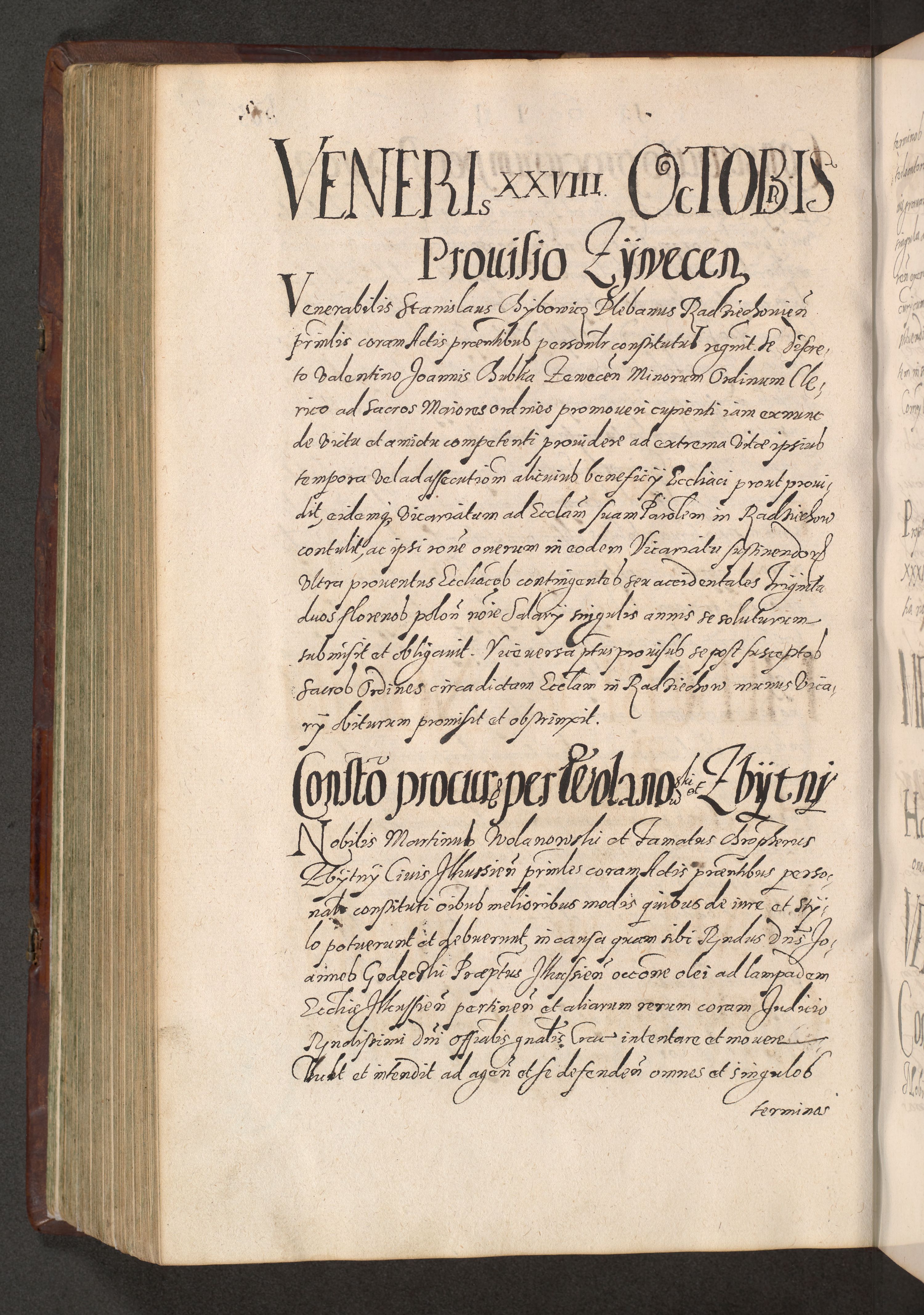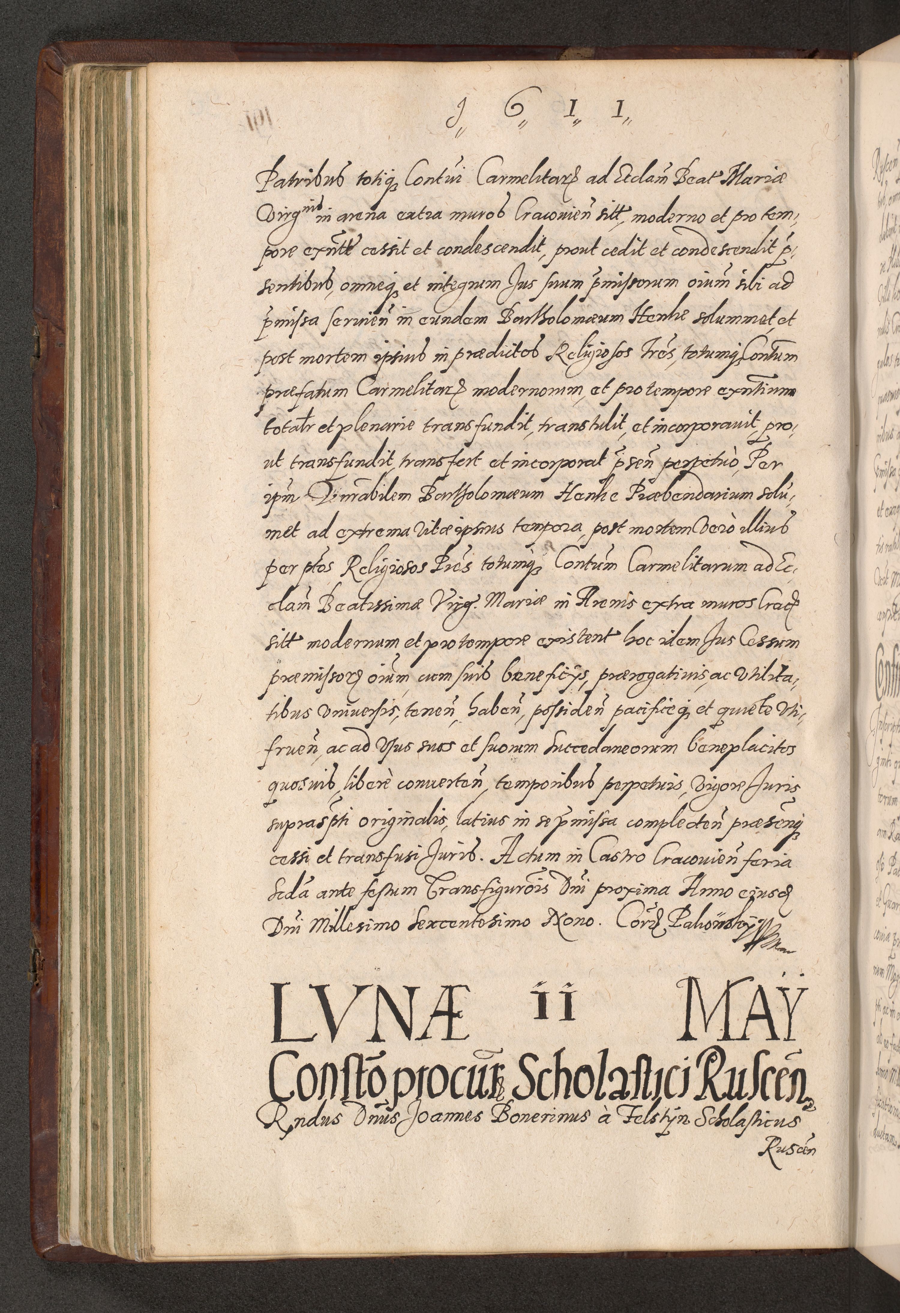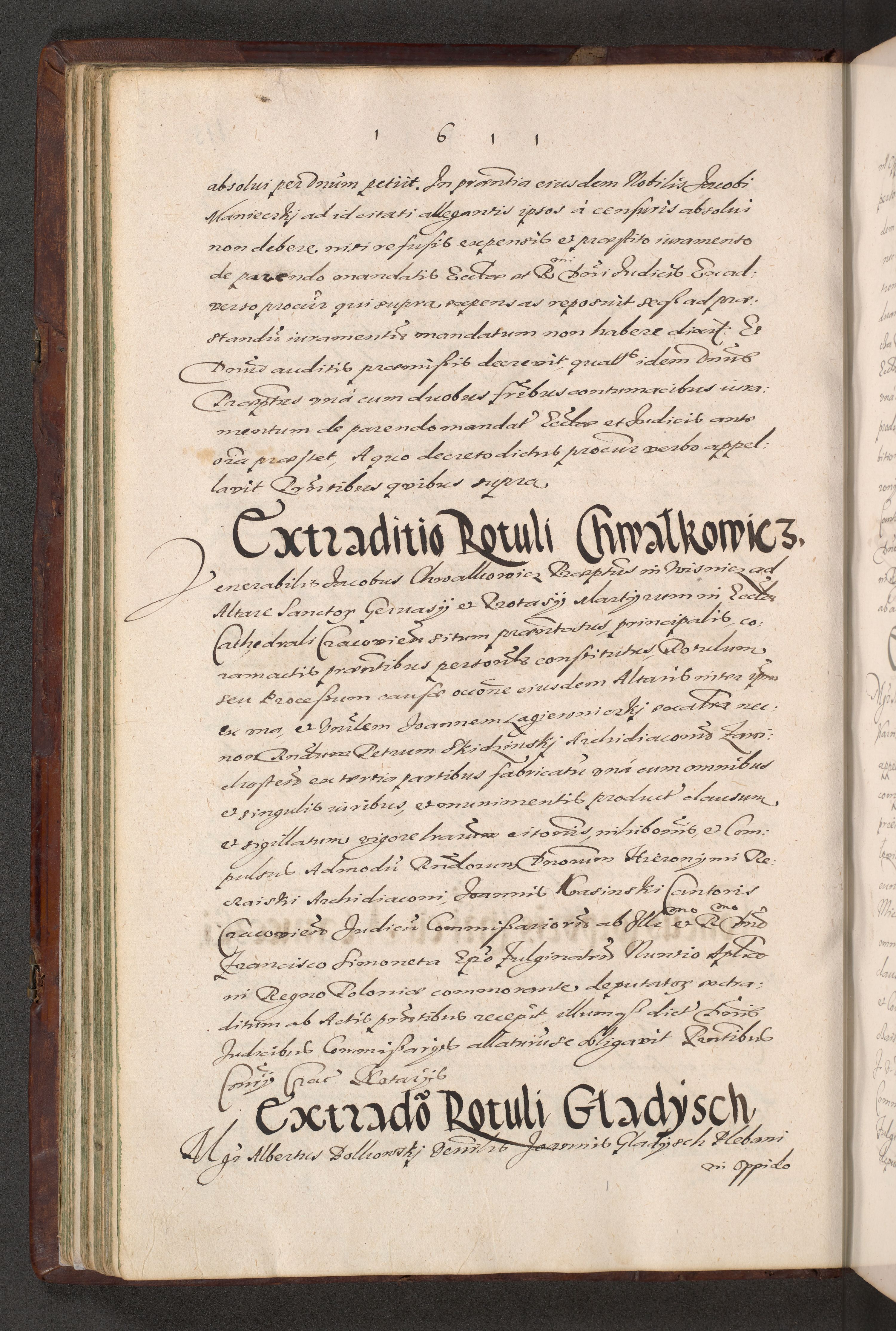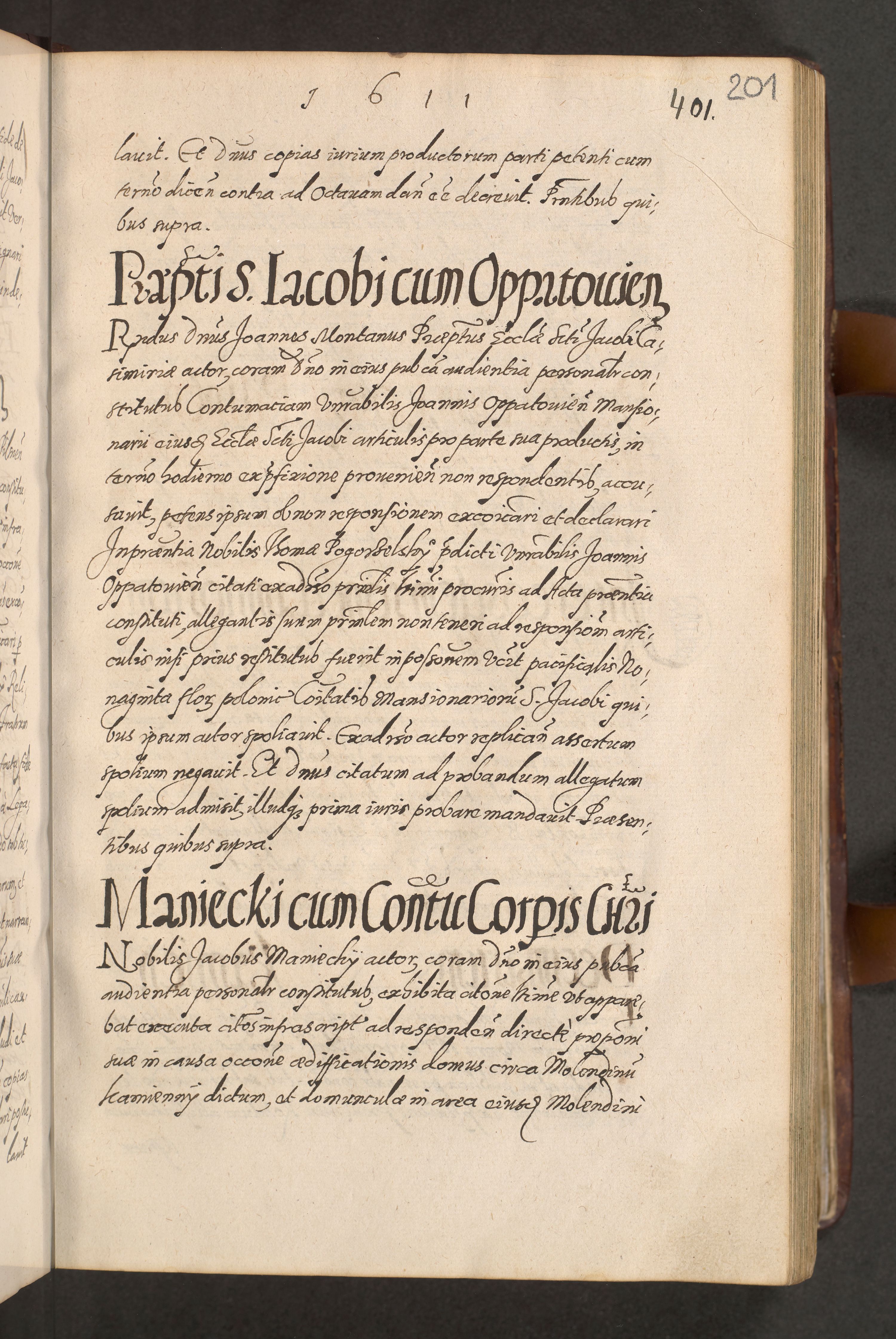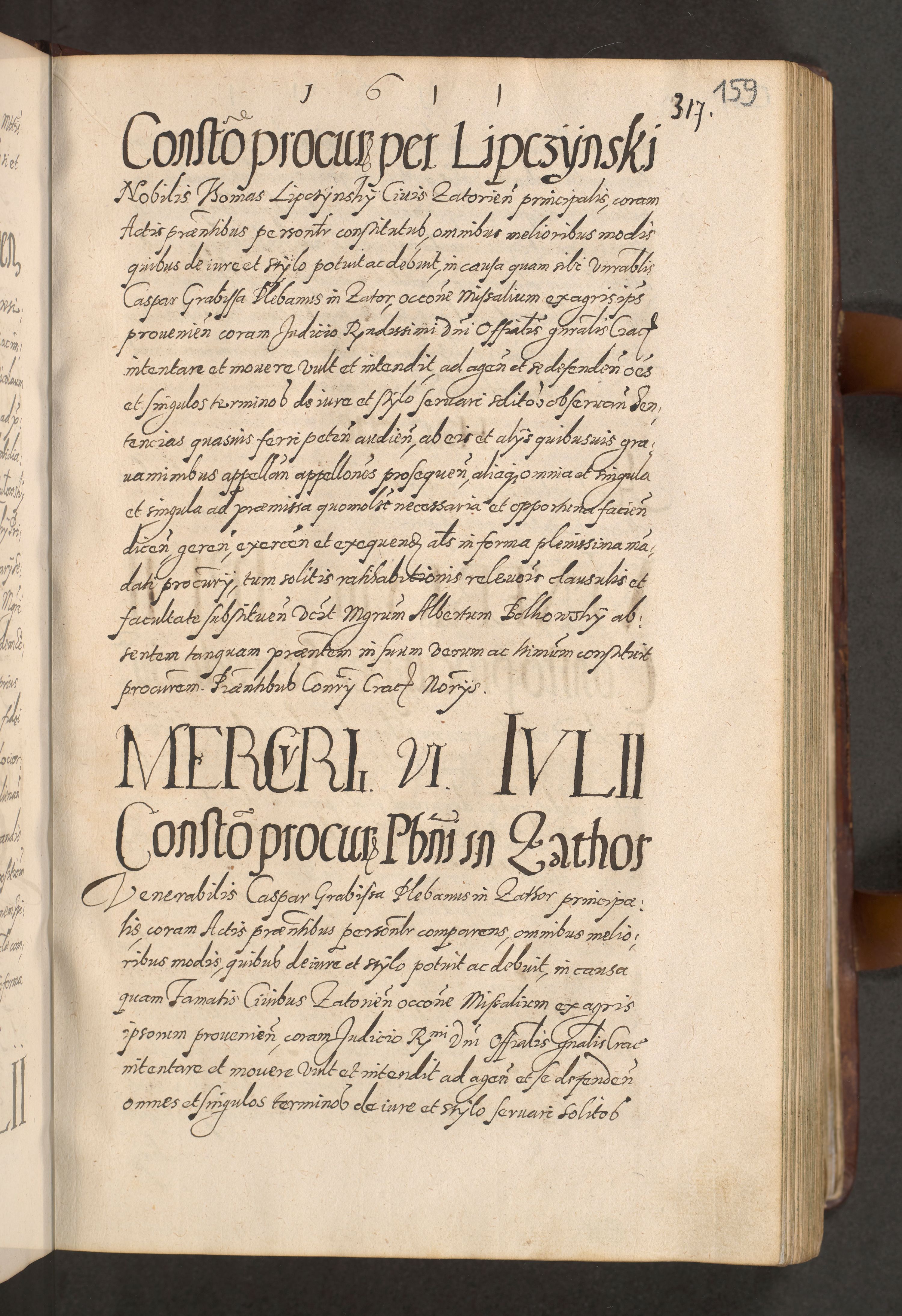 Acta actorum causarum sententiarum tam diffinitiuarum quam interloquutorisrum decretorum obligationum quietationum procuratorum constitutionum etc. etc. coram Reverendo Domino Paulo Dembski Dei et Apostolice Sedis Gratia Episcopalo Dicensis Suffraganeo Canonico Vicario in Spiritualibus et Officiali Generali Cracoviensis ad Annum Domini Millesimum Sexcentesimum Undecimum cuius indictio octava pontificatus Sanctissimi Domini Nostri Domini Pauli Divina Providentia Papae Vti foeliciter continuantur