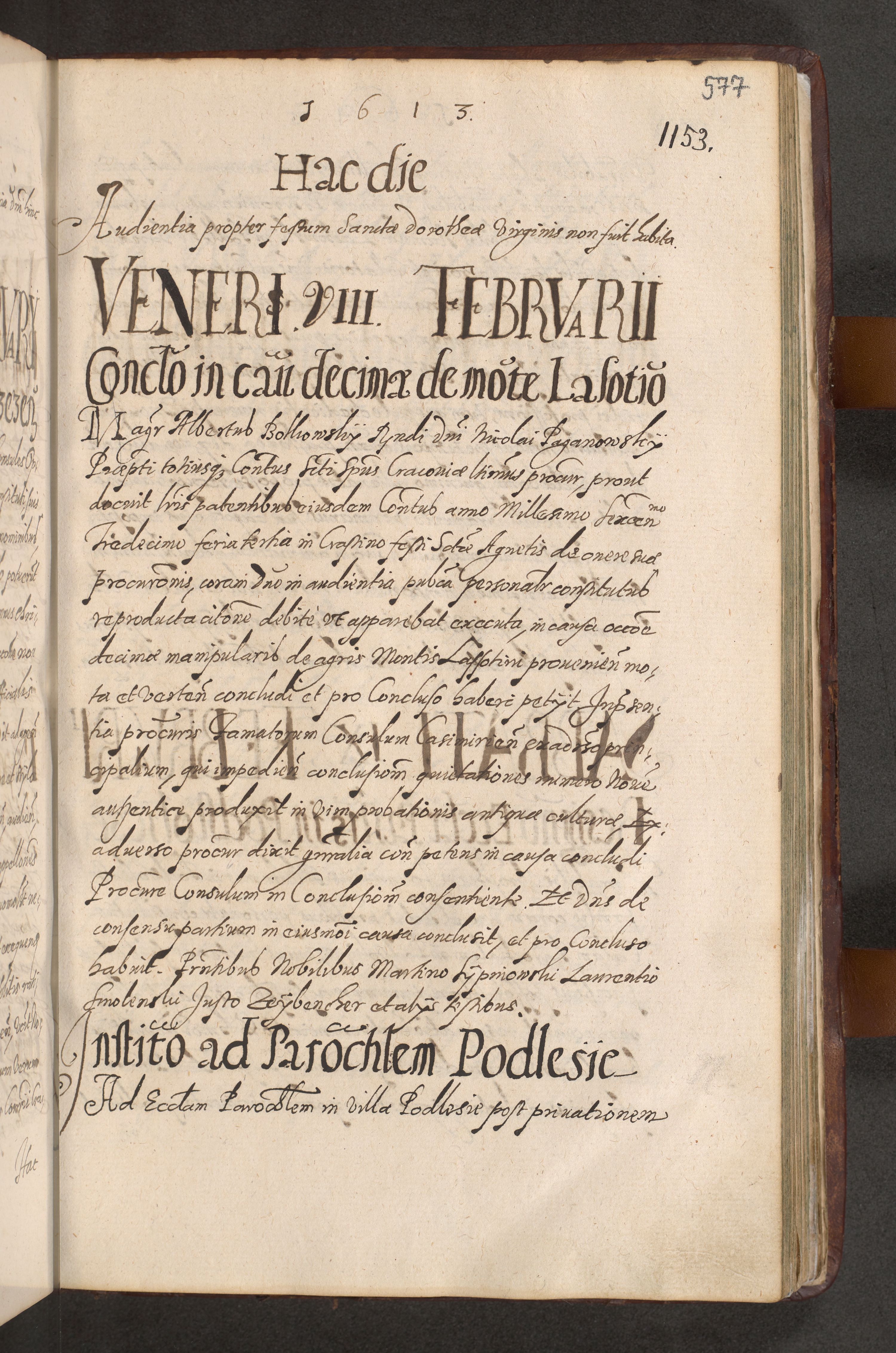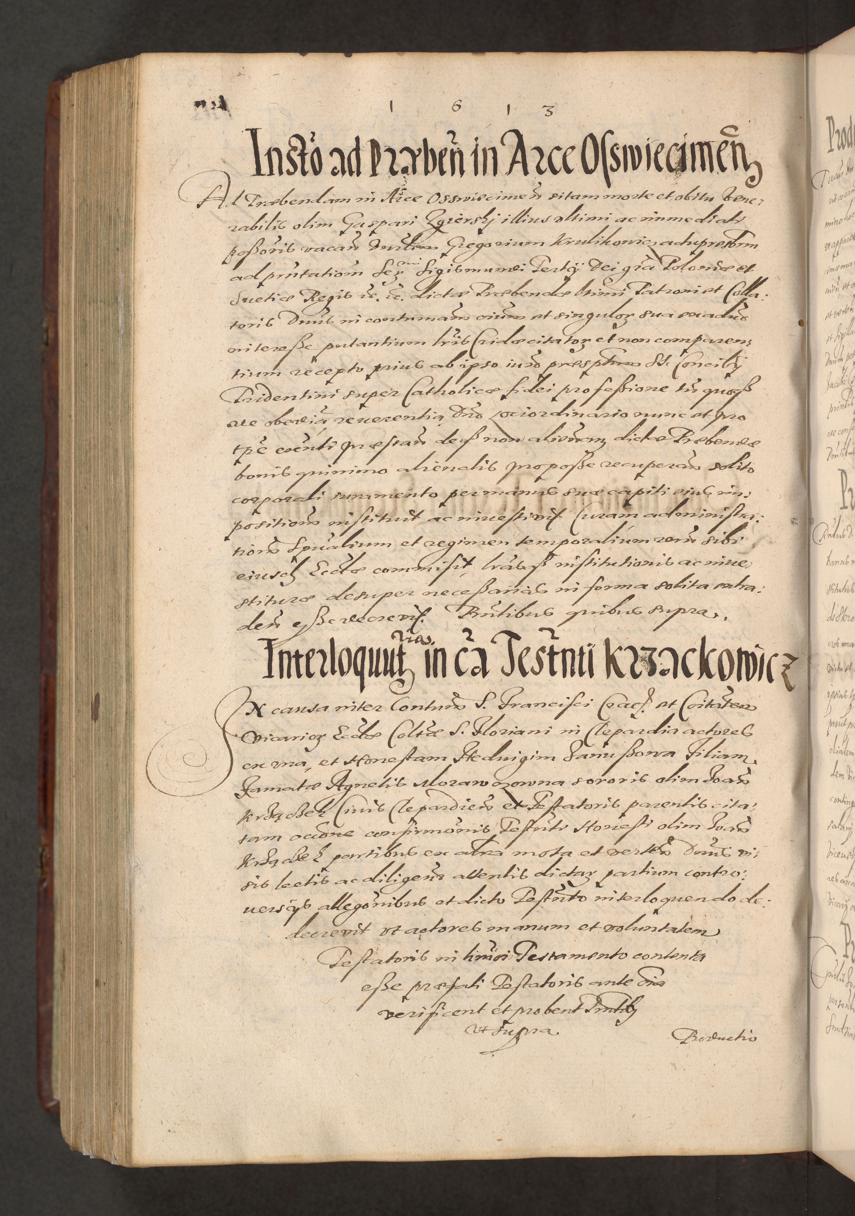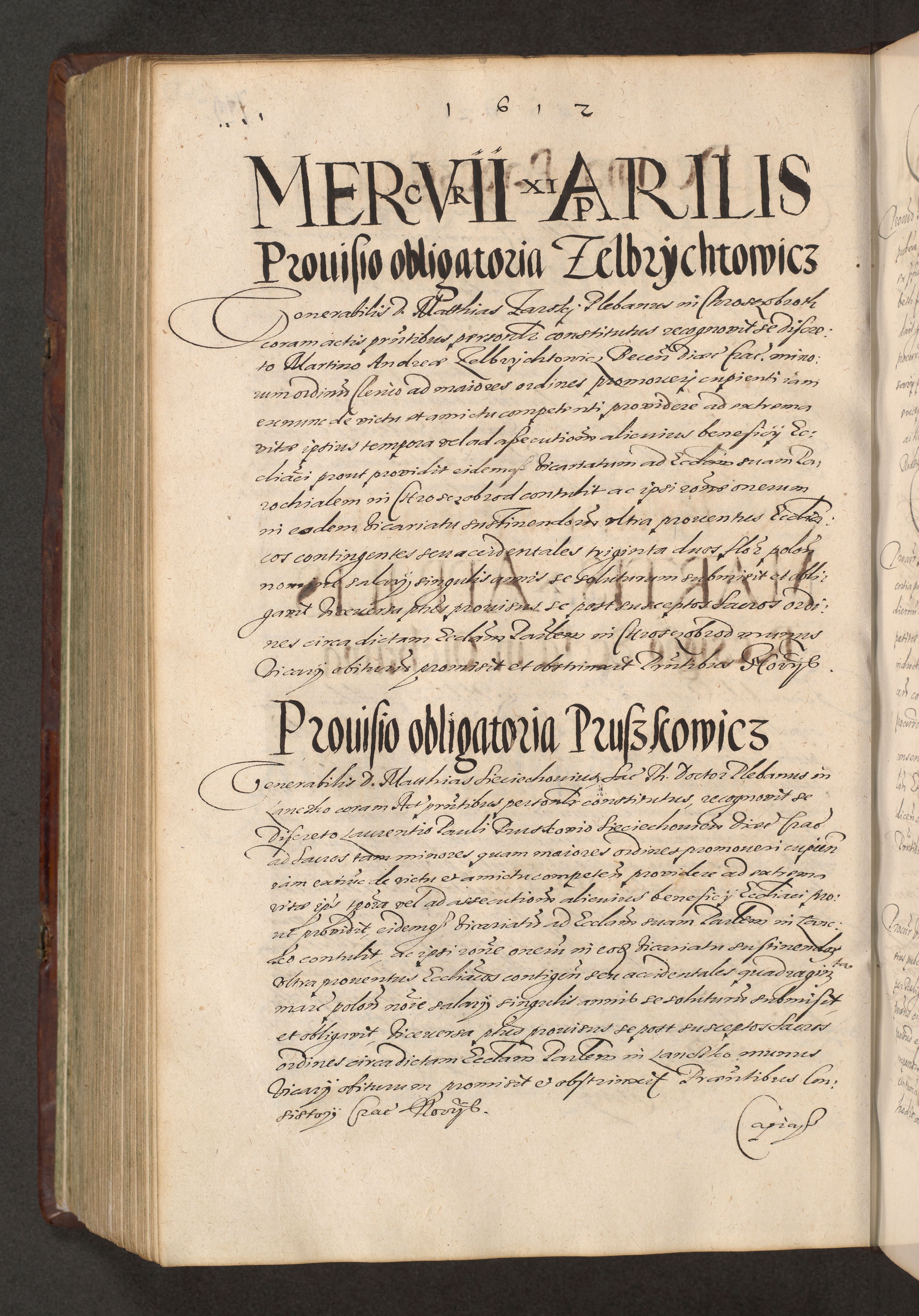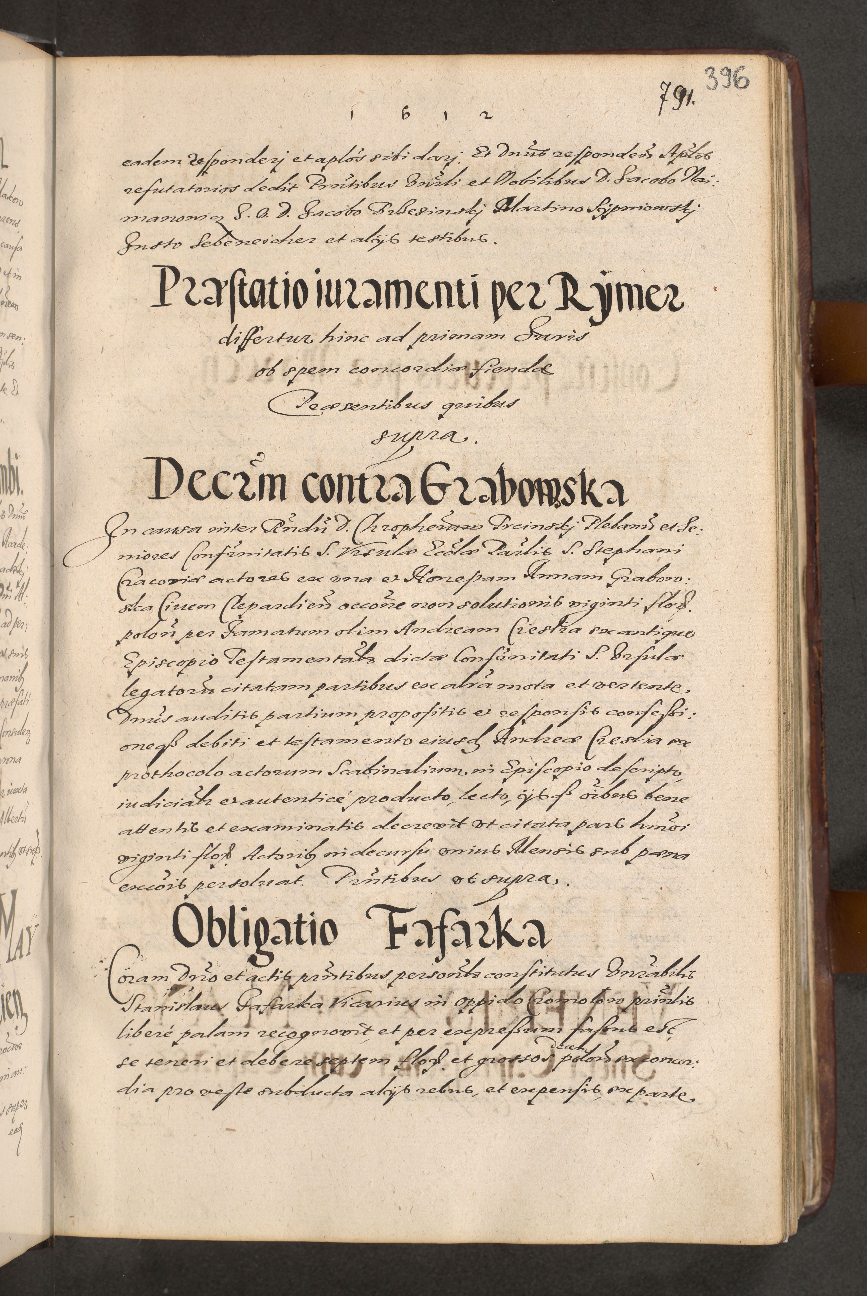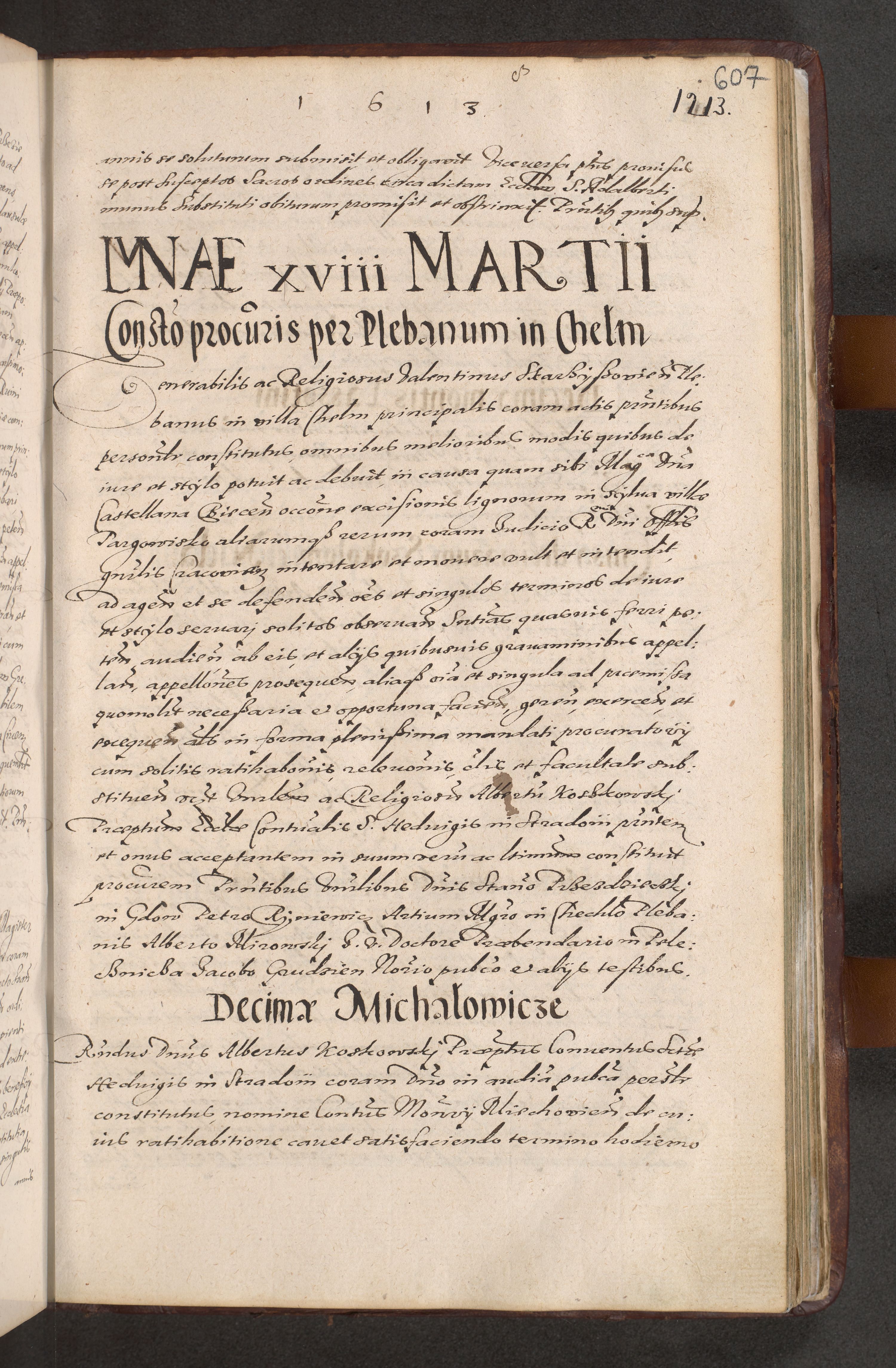 Acta actorum causarum sententiarum tam diffinitiuarum quam interloquutorisrum decretorum obligationum quietationum procuratorum constitutionum etc. etc. coram Reverendo Domino Paulo Dembski Dei et Apostolice Sedis Gratia Episcopalo Dicensis Suffraganeo Canonico Vicario in Spiritualibus et Officiali Generali Cracoviensis ad Annum Domini Millesimum Sexcentesimum Undecimum cuius indictio octava pontificatus Sanctissimi Domini Nostri Domini Pauli Divina Providentia Papae Vti foeliciter continuantur