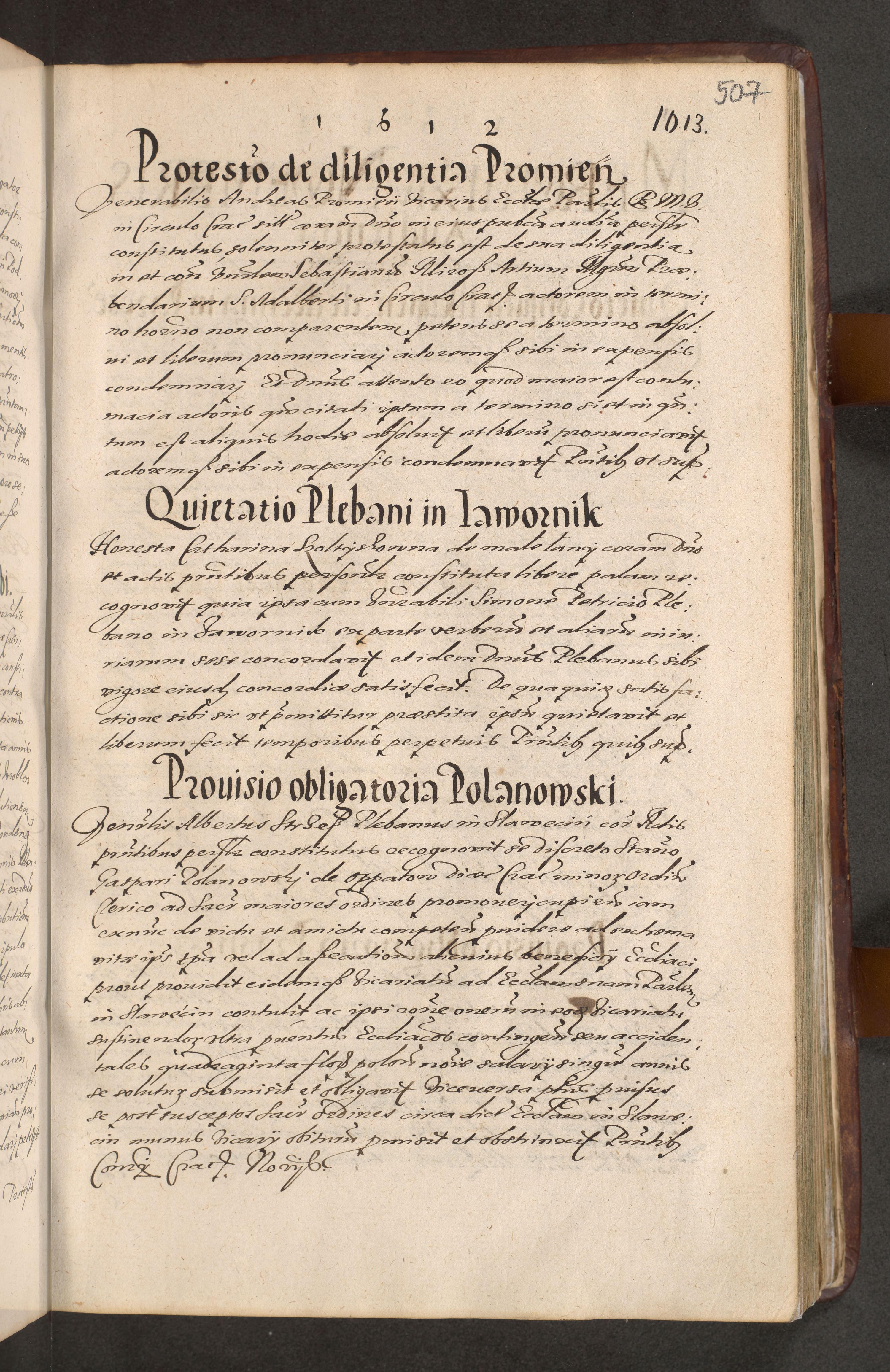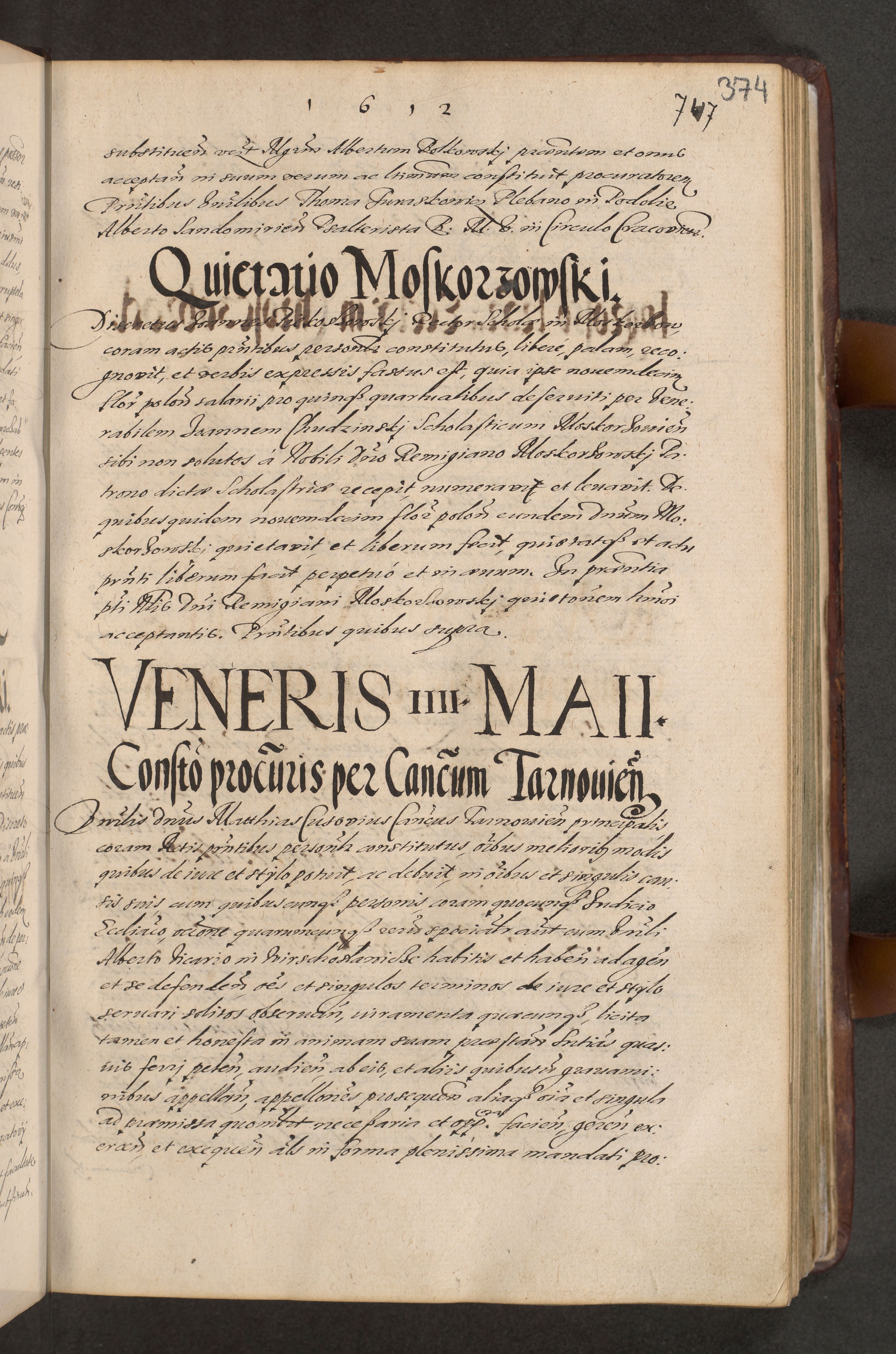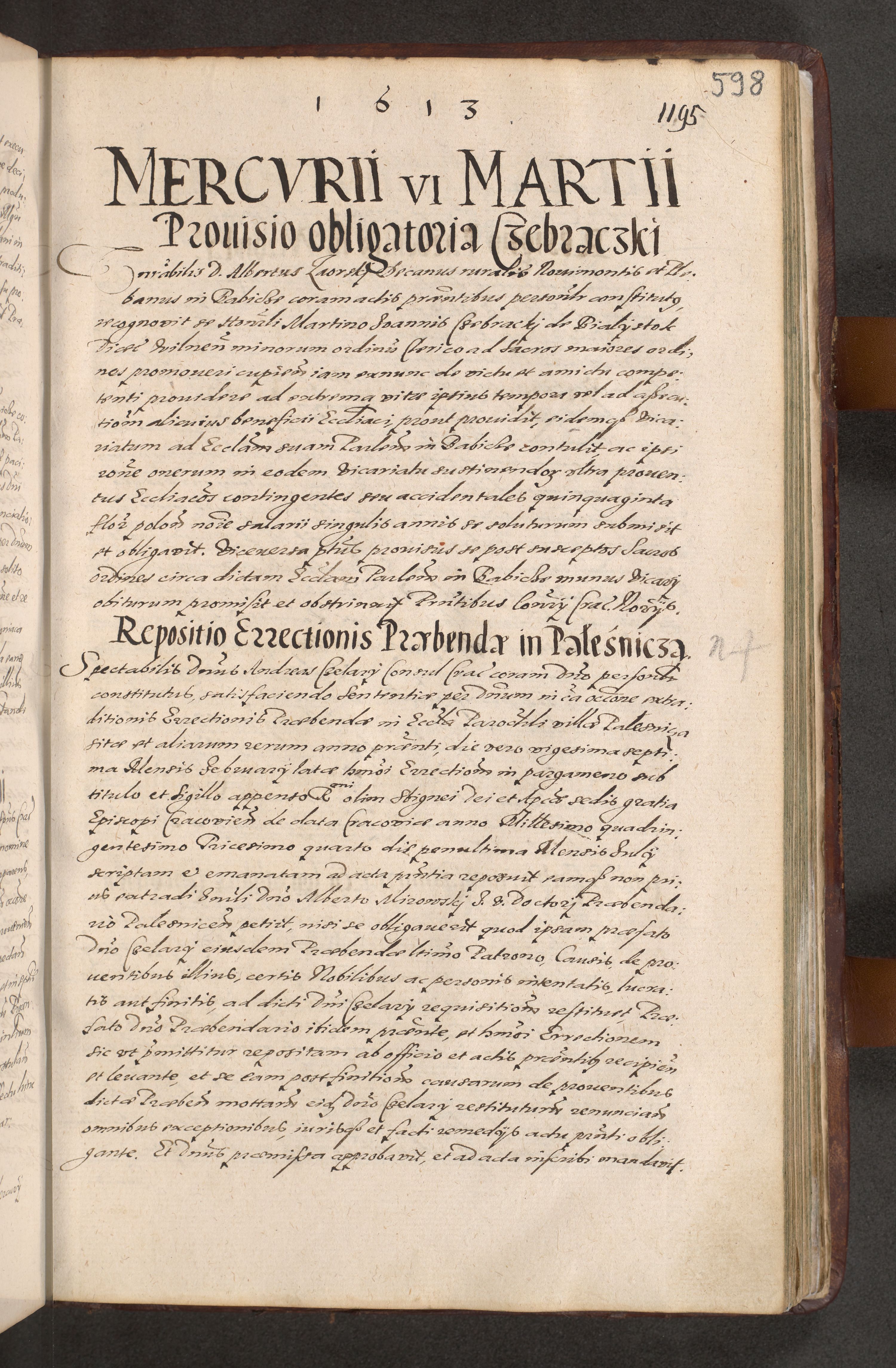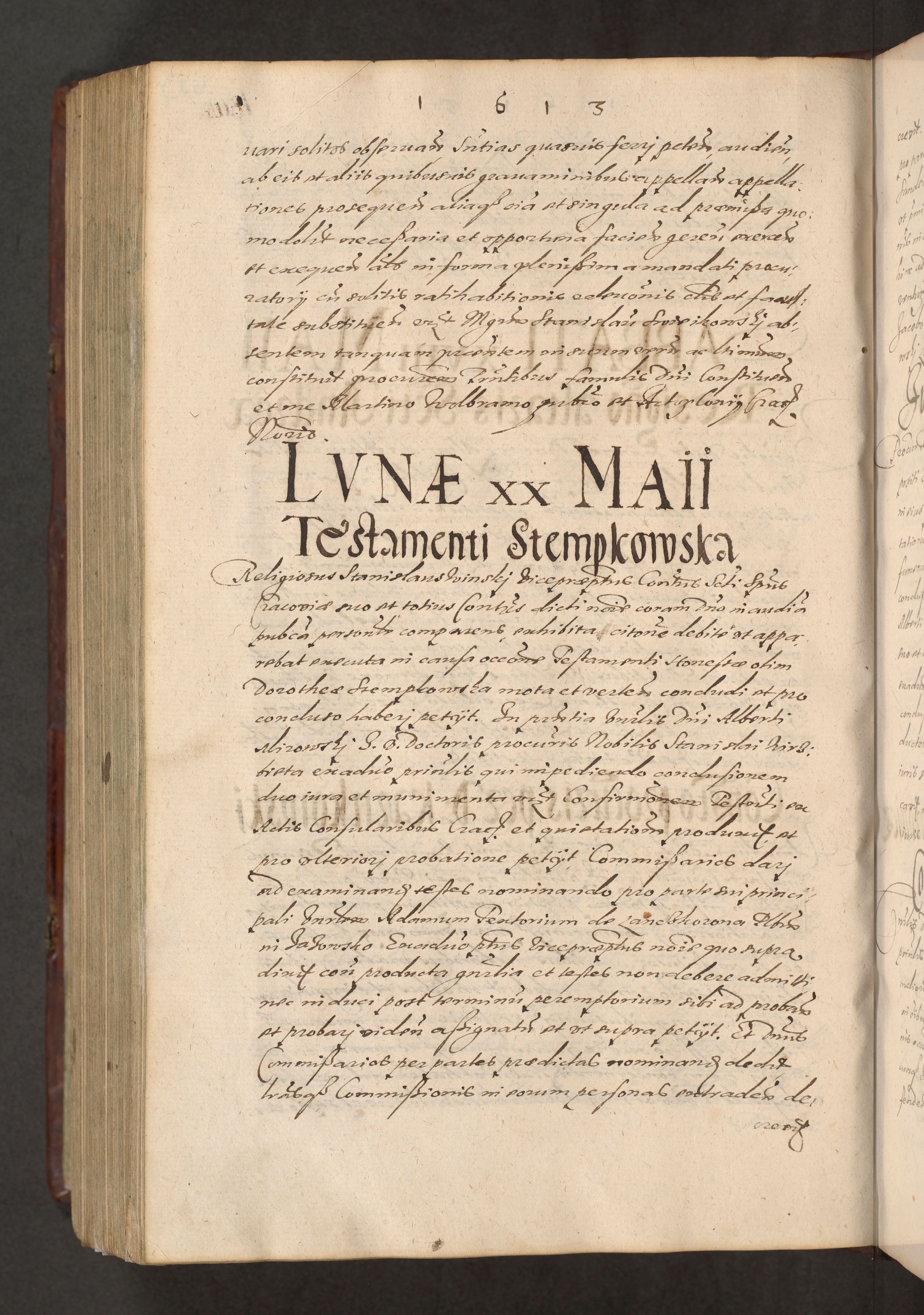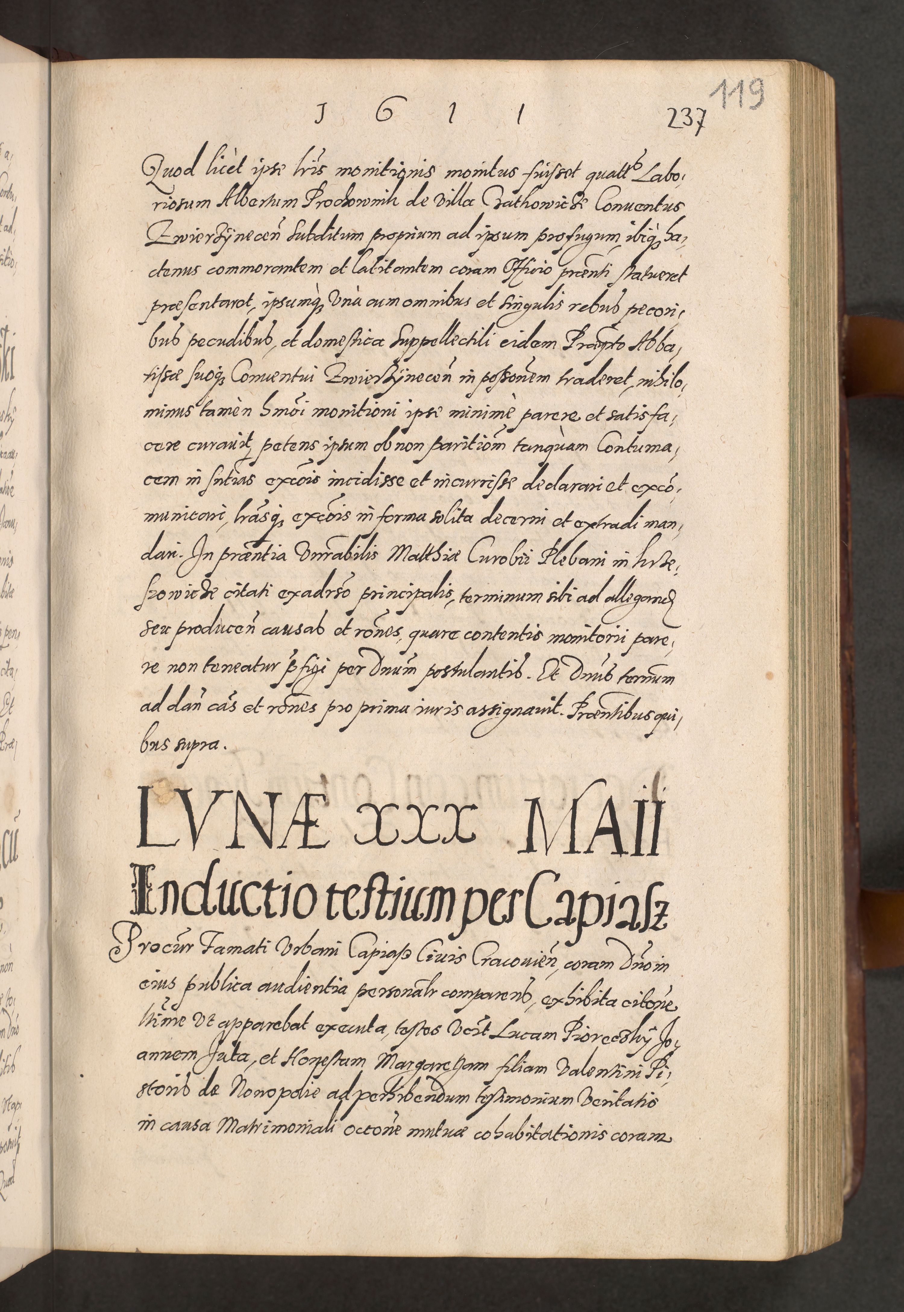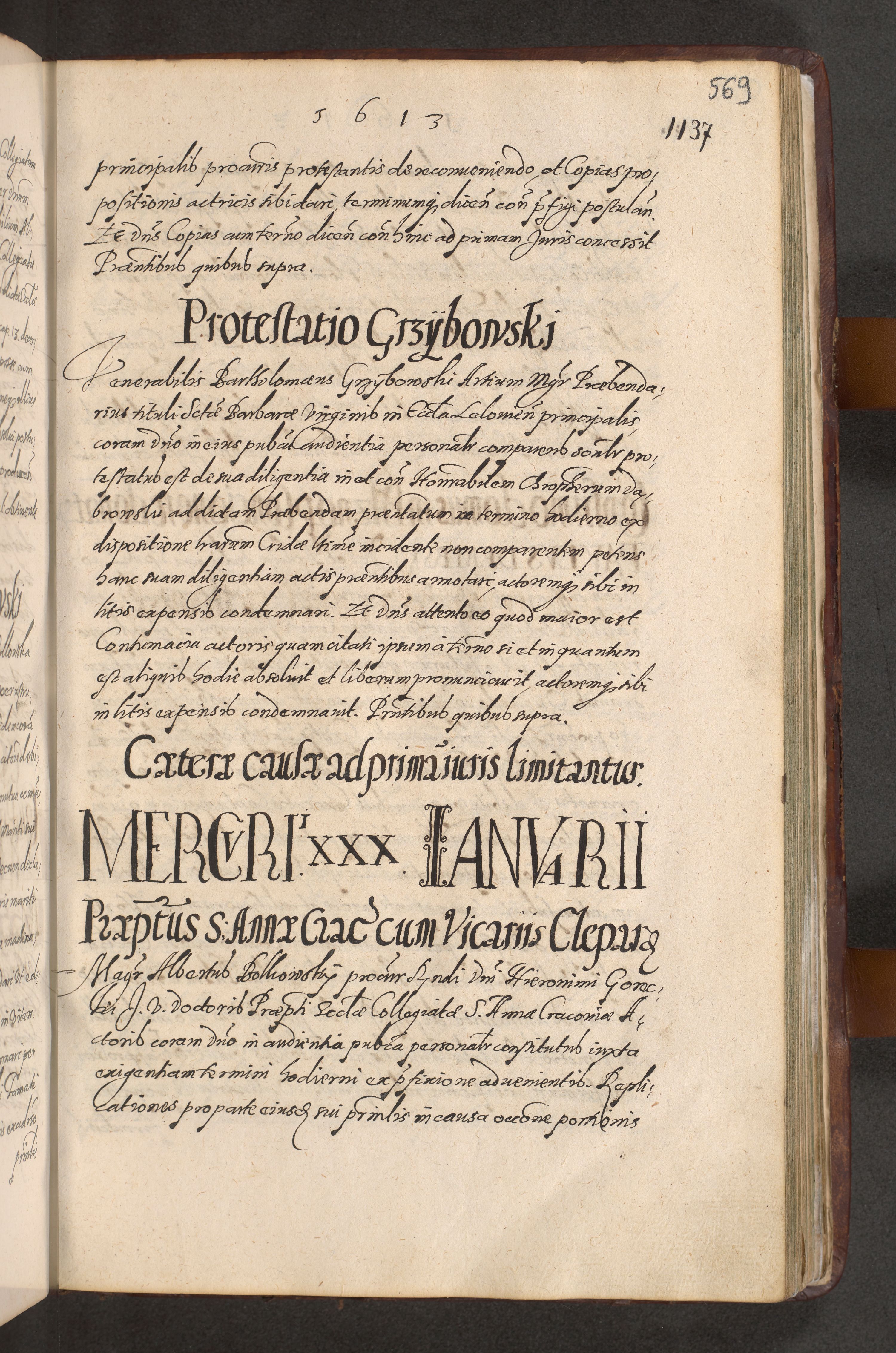 Acta actorum causarum sententiarum tam diffinitiuarum quam interloquutorisrum decretorum obligationum quietationum procuratorum constitutionum etc. etc. coram Reverendo Domino Paulo Dembski Dei et Apostolice Sedis Gratia Episcopalo Dicensis Suffraganeo Canonico Vicario in Spiritualibus et Officiali Generali Cracoviensis ad Annum Domini Millesimum Sexcentesimum Undecimum cuius indictio octava pontificatus Sanctissimi Domini Nostri Domini Pauli Divina Providentia Papae Vti foeliciter continuantur