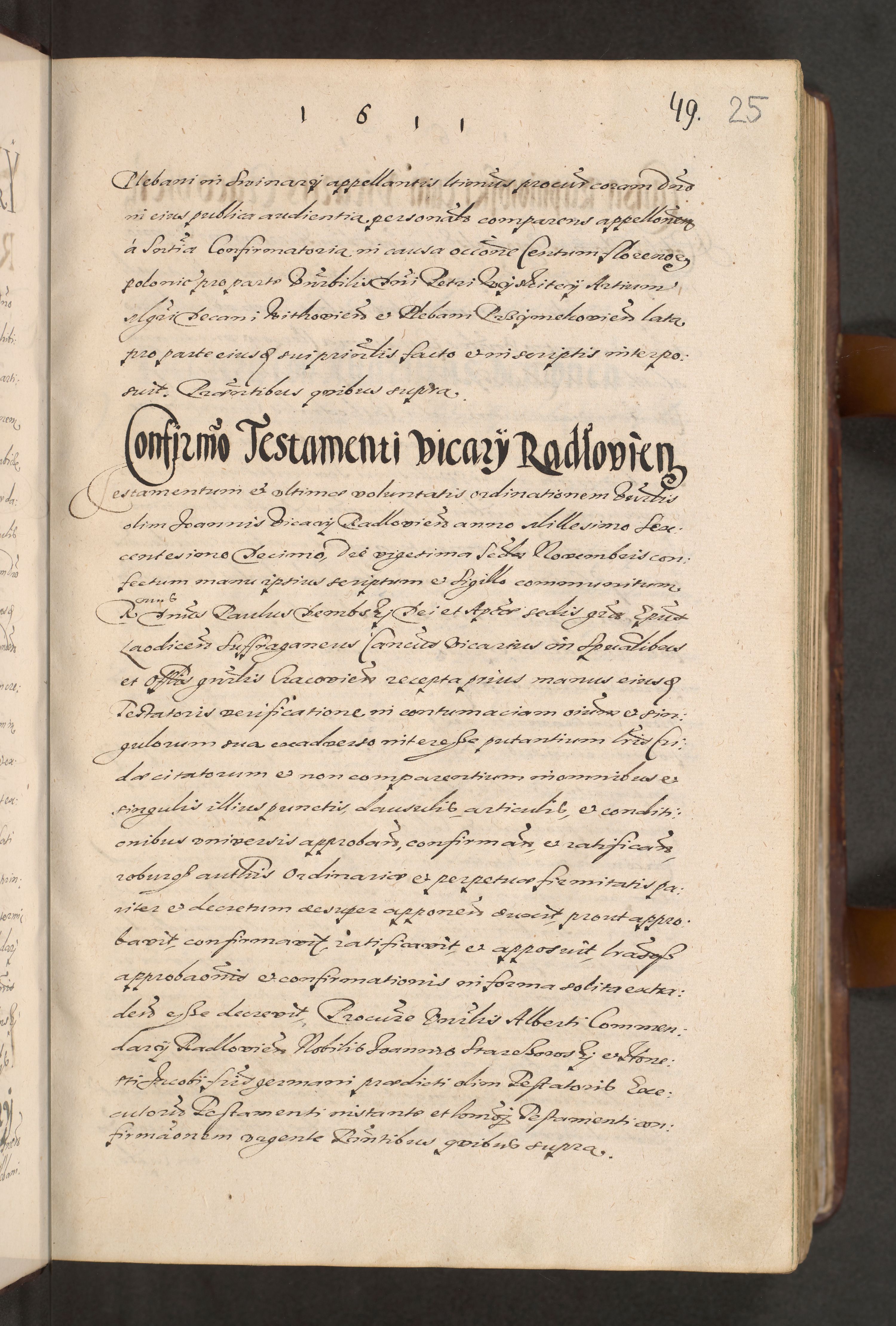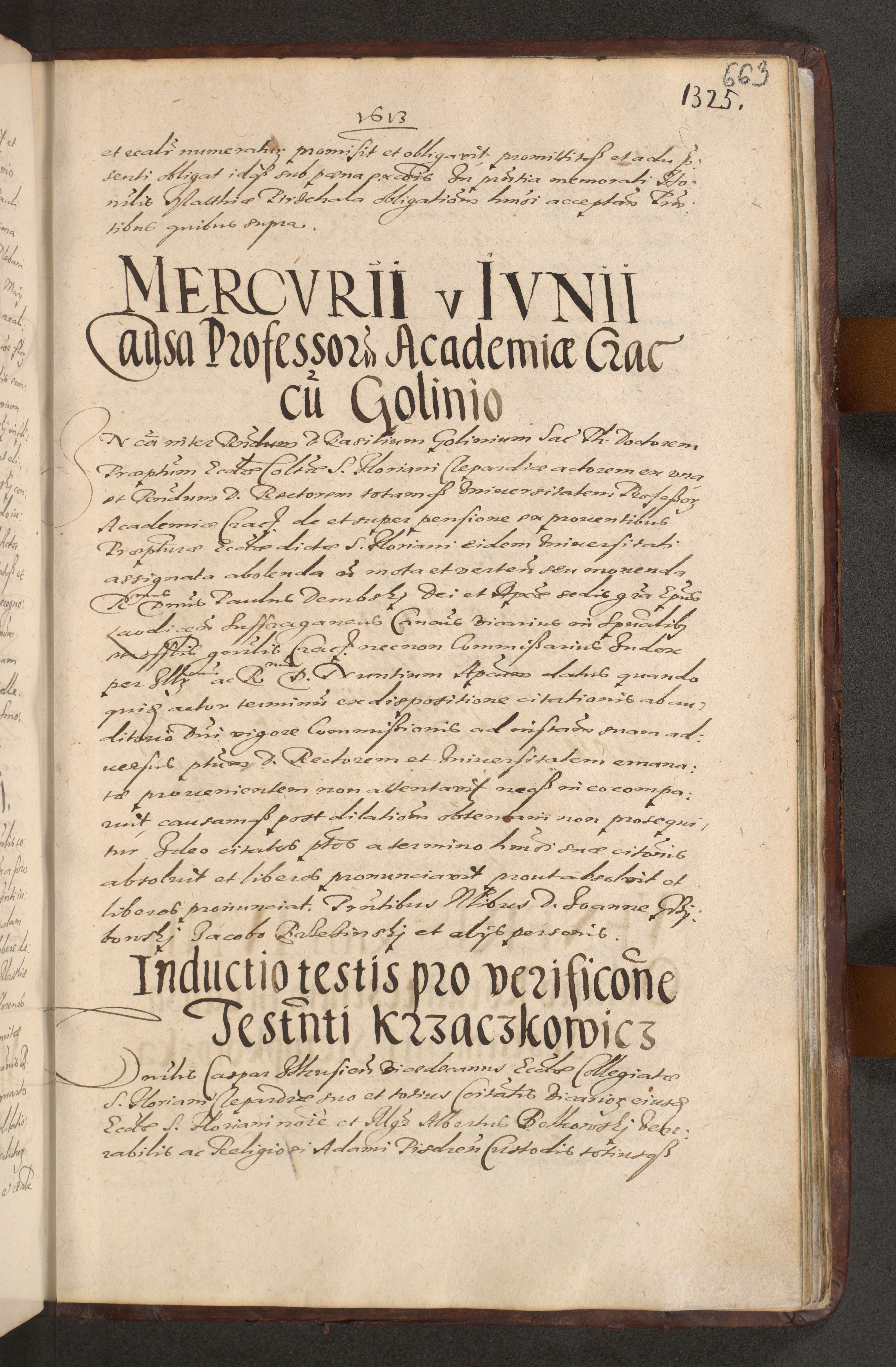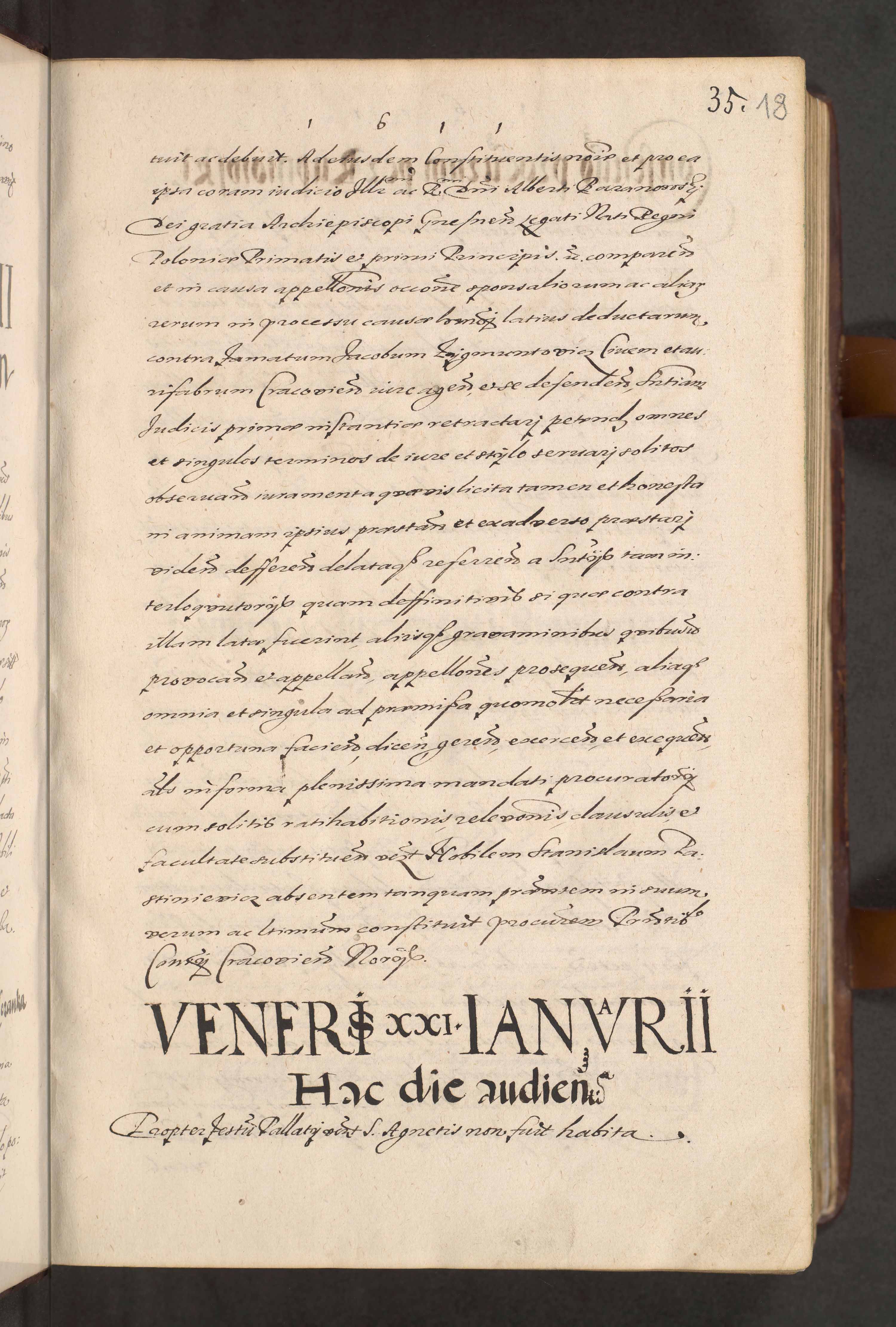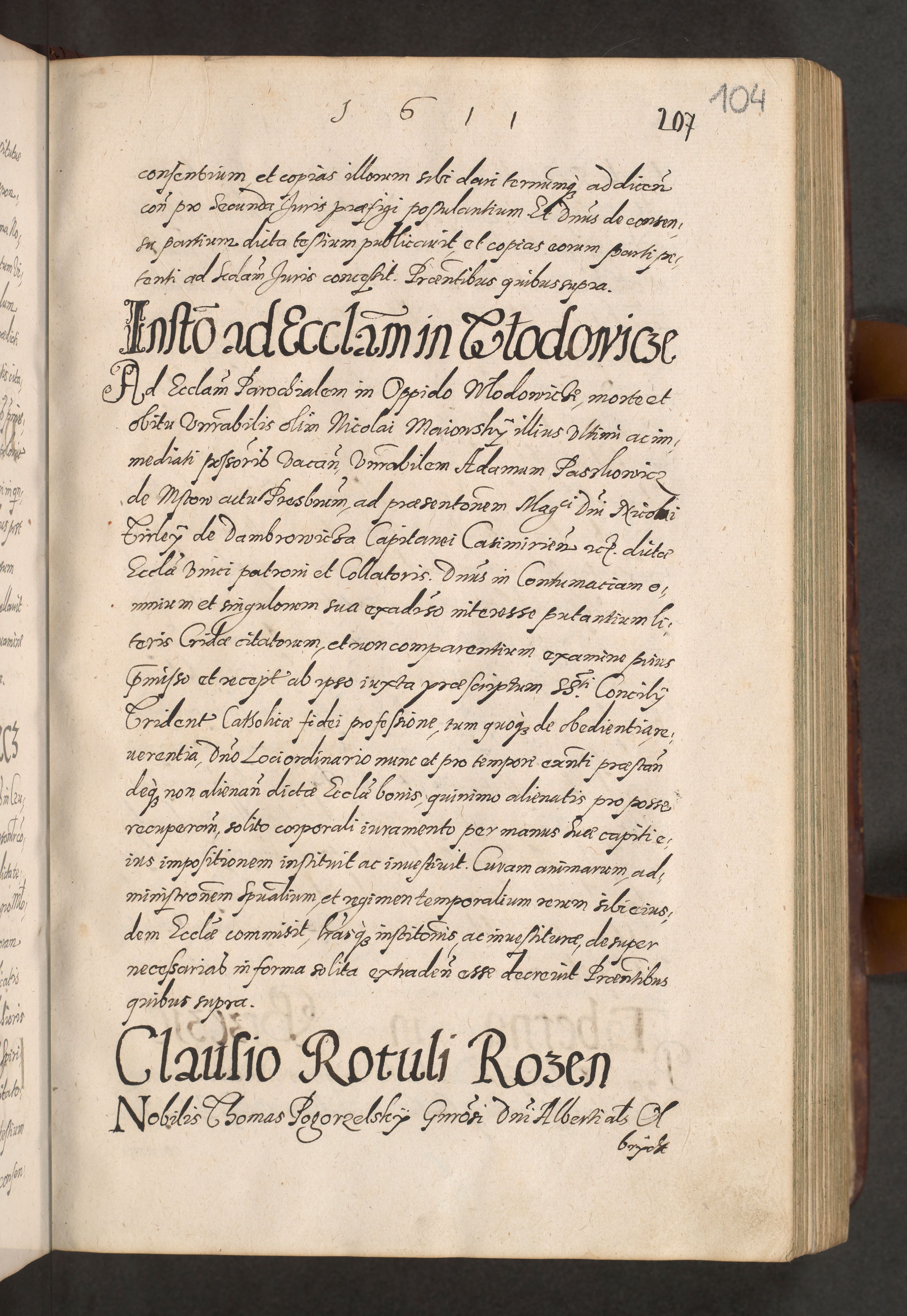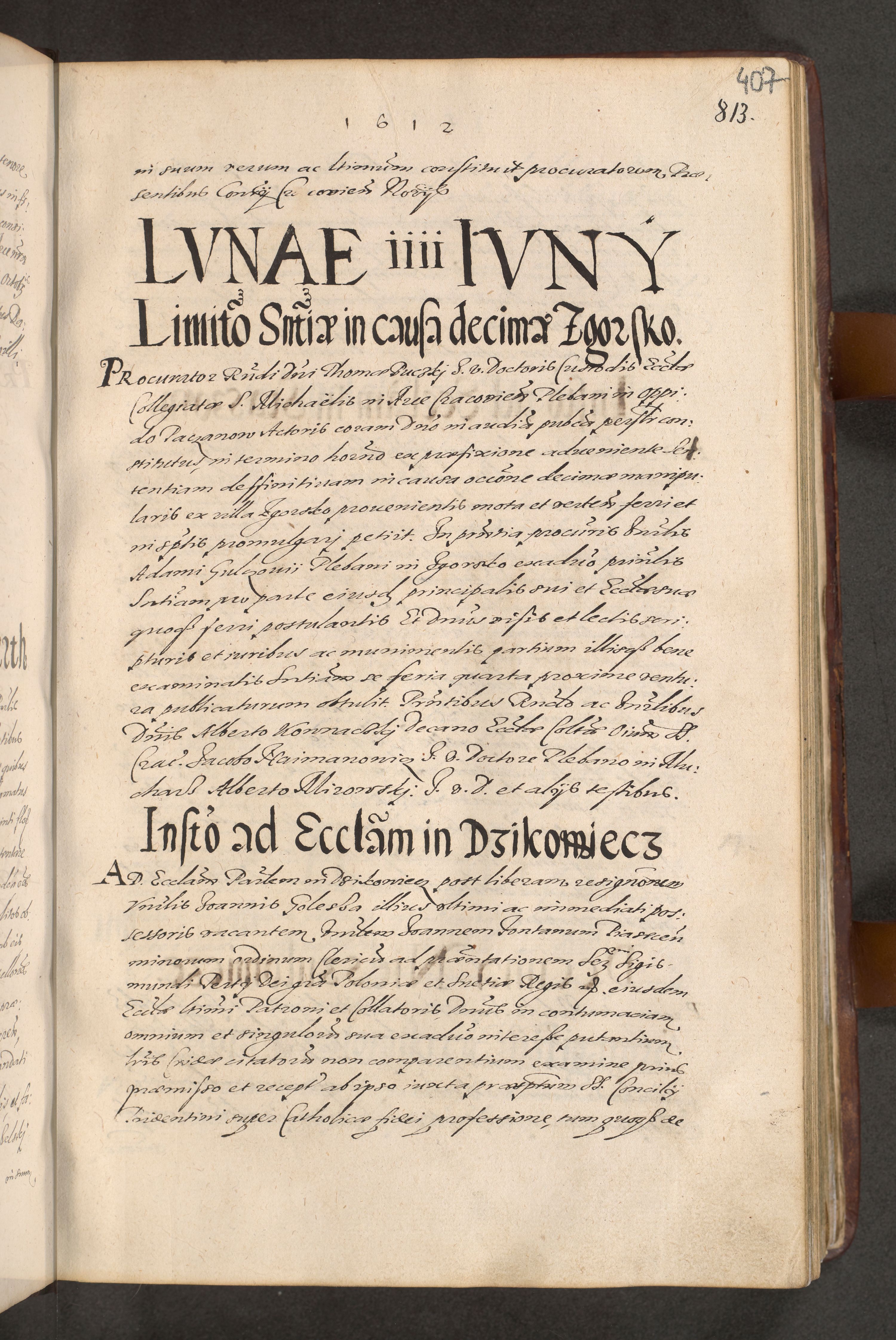 Acta actorum causarum sententiarum tam diffinitiuarum quam interloquutorisrum decretorum obligationum quietationum procuratorum constitutionum etc. etc. coram Reverendo Domino Paulo Dembski Dei et Apostolice Sedis Gratia Episcopalo Dicensis Suffraganeo Canonico Vicario in Spiritualibus et Officiali Generali Cracoviensis ad Annum Domini Millesimum Sexcentesimum Undecimum cuius indictio octava pontificatus Sanctissimi Domini Nostri Domini Pauli Divina Providentia Papae Vti foeliciter continuantur