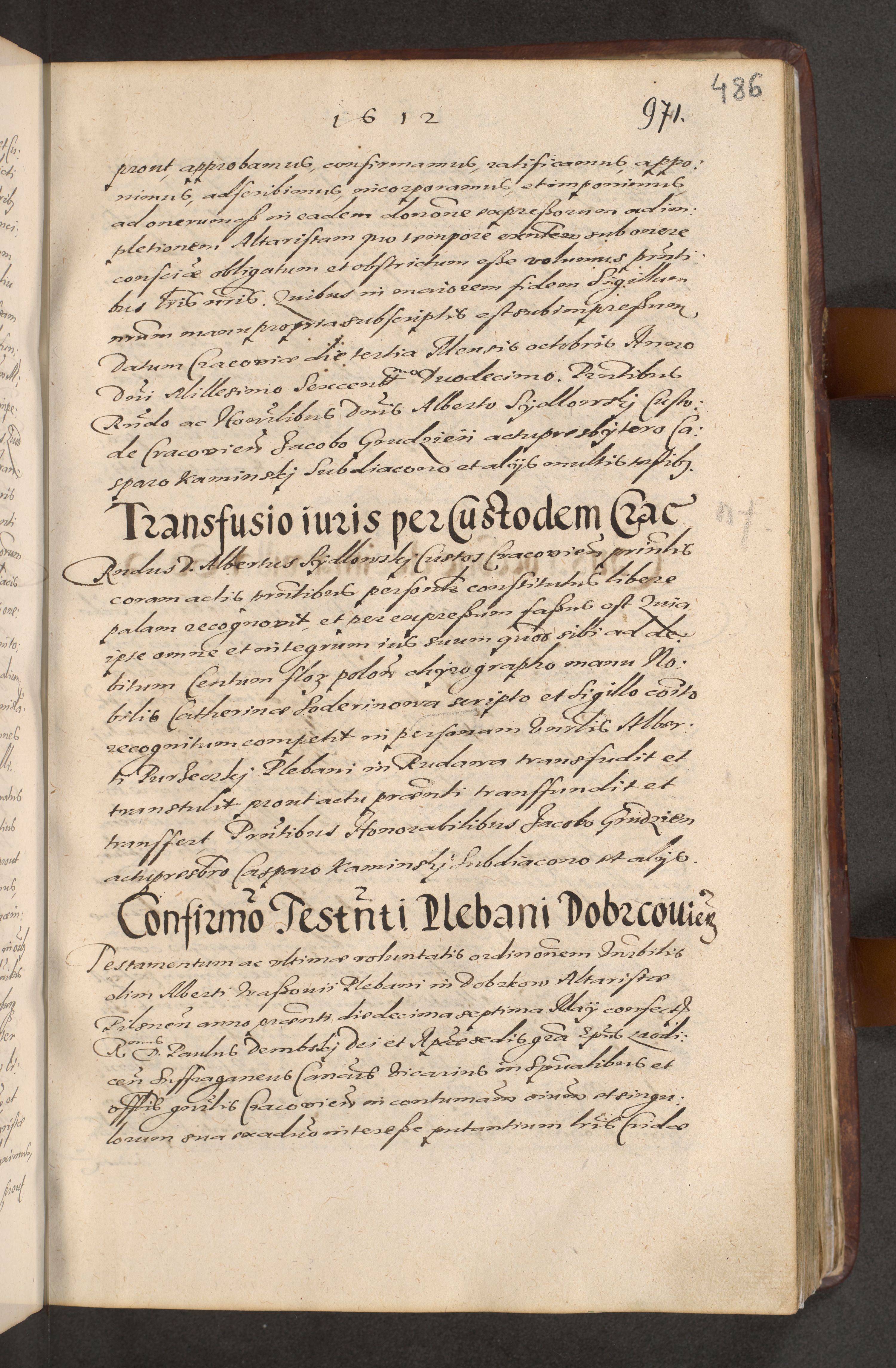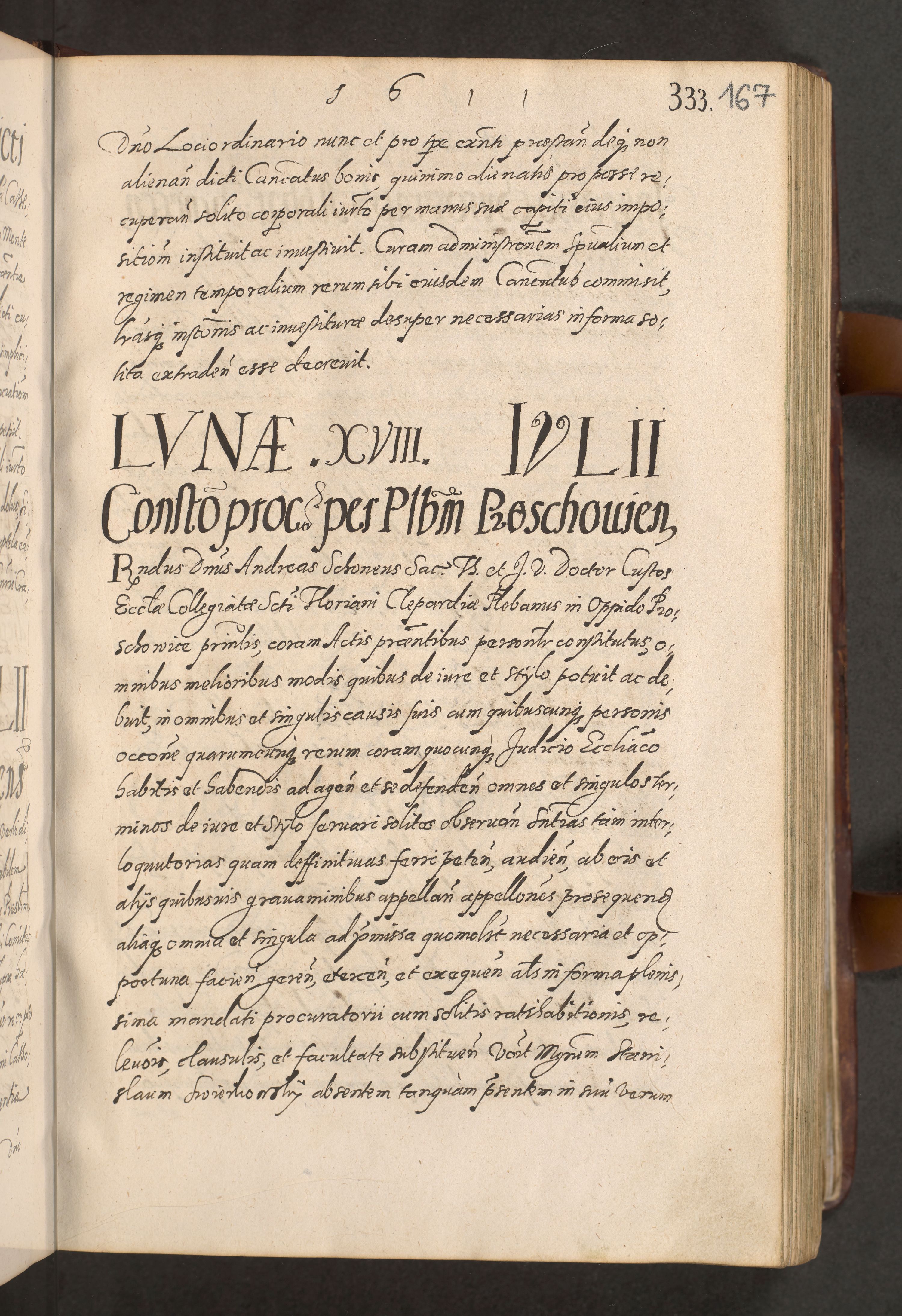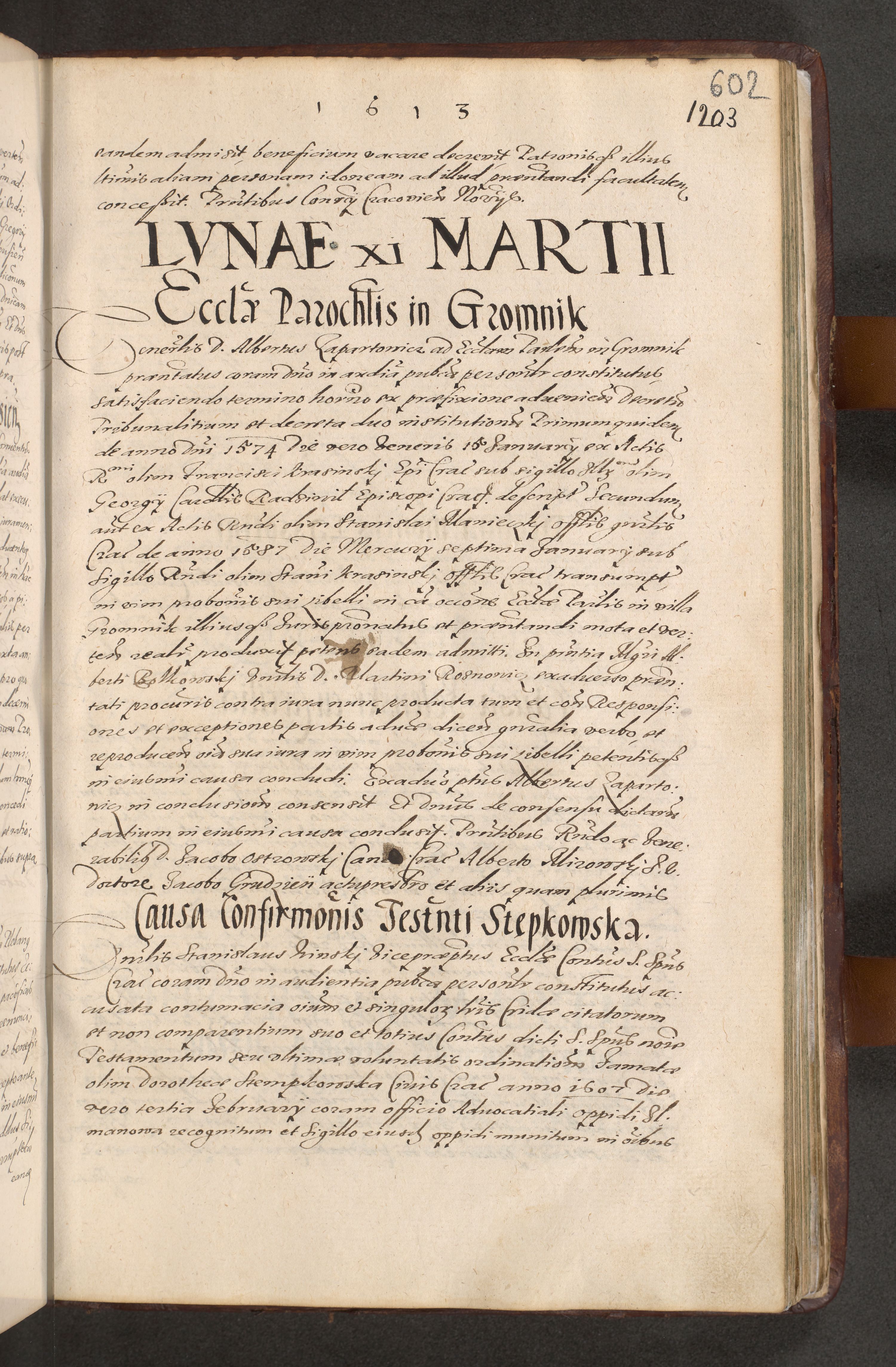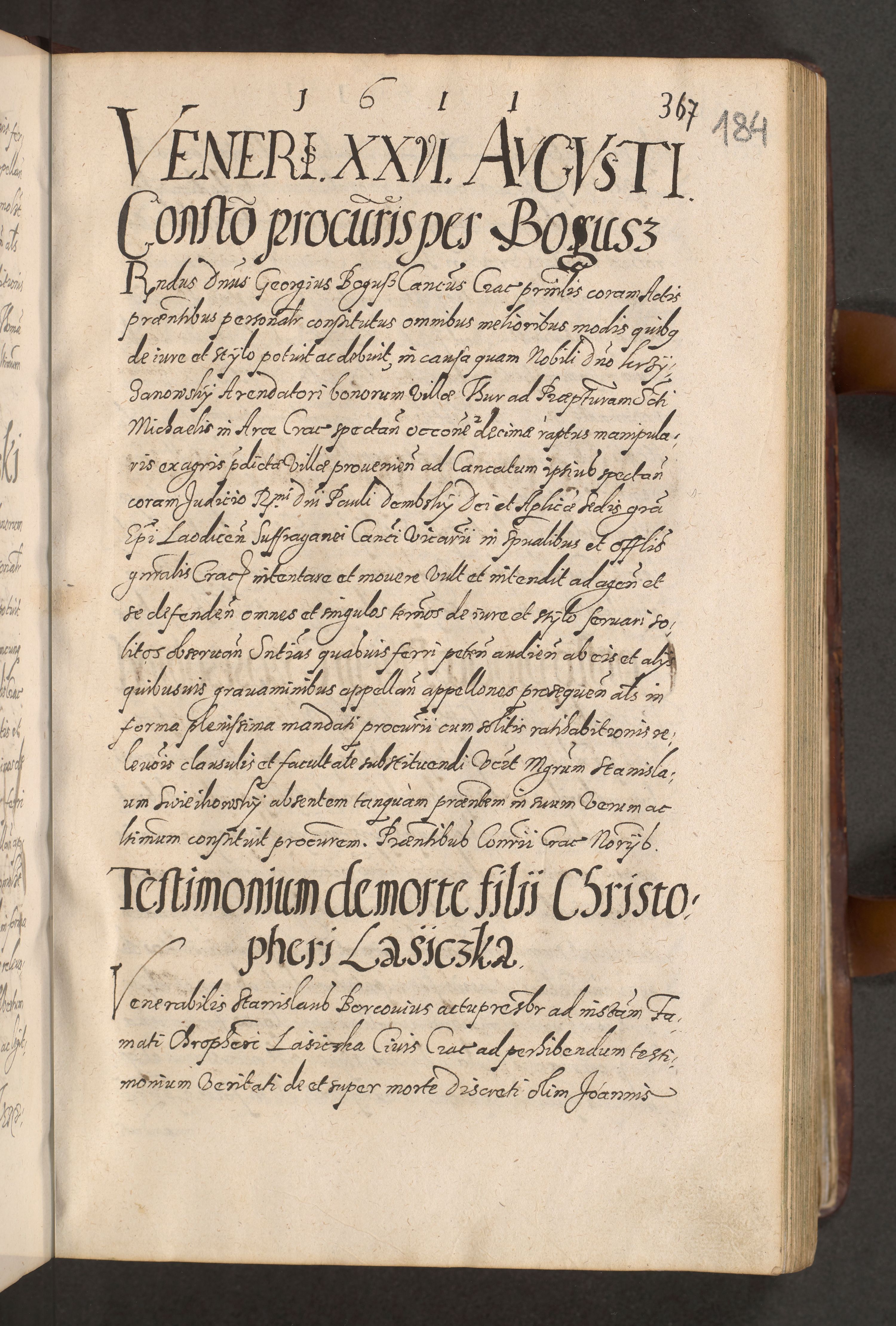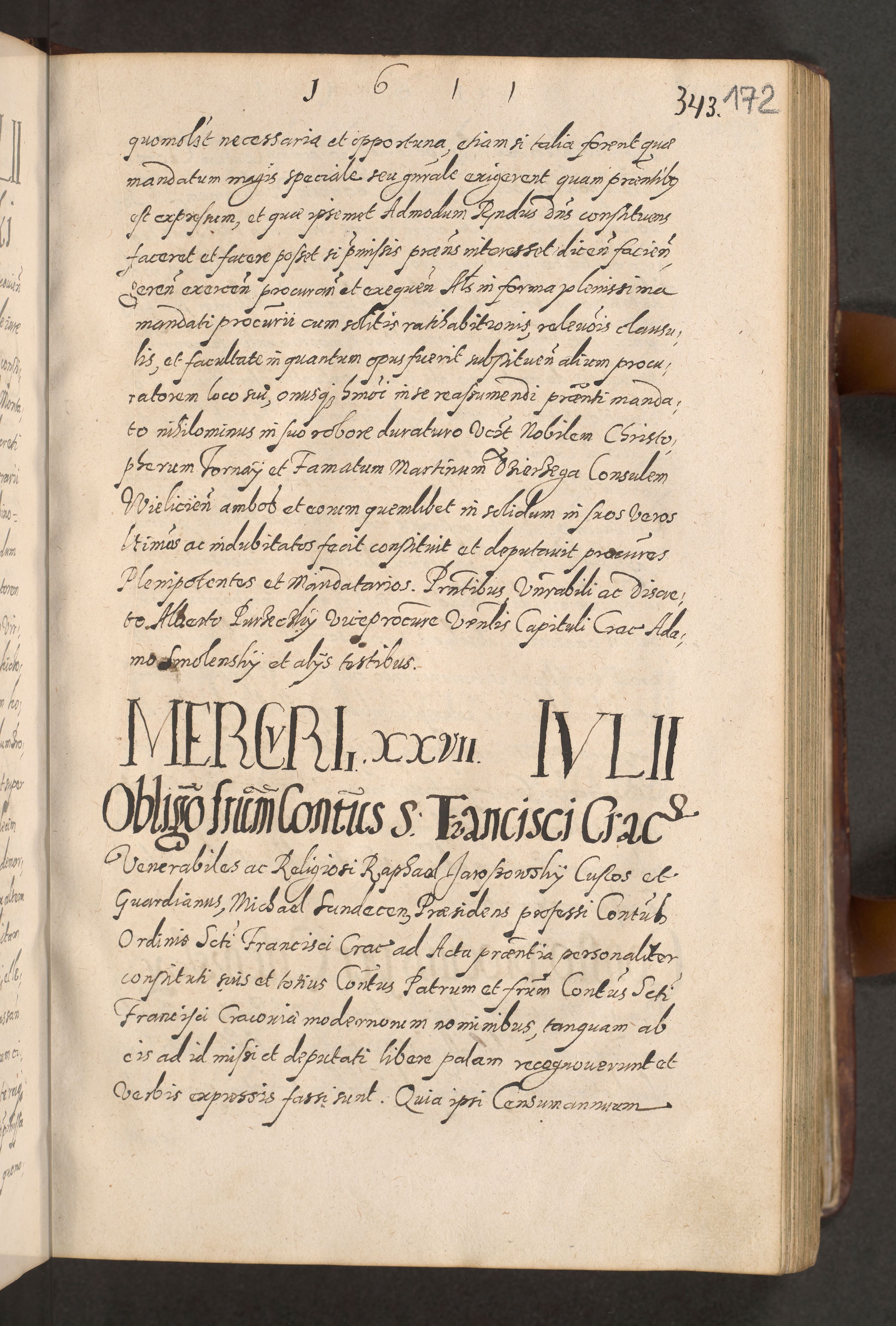 Acta actorum causarum sententiarum tam diffinitiuarum quam interloquutorisrum decretorum obligationum quietationum procuratorum constitutionum etc. etc. coram Reverendo Domino Paulo Dembski Dei et Apostolice Sedis Gratia Episcopalo Dicensis Suffraganeo Canonico Vicario in Spiritualibus et Officiali Generali Cracoviensis ad Annum Domini Millesimum Sexcentesimum Undecimum cuius indictio octava pontificatus Sanctissimi Domini Nostri Domini Pauli Divina Providentia Papae Vti foeliciter continuantur