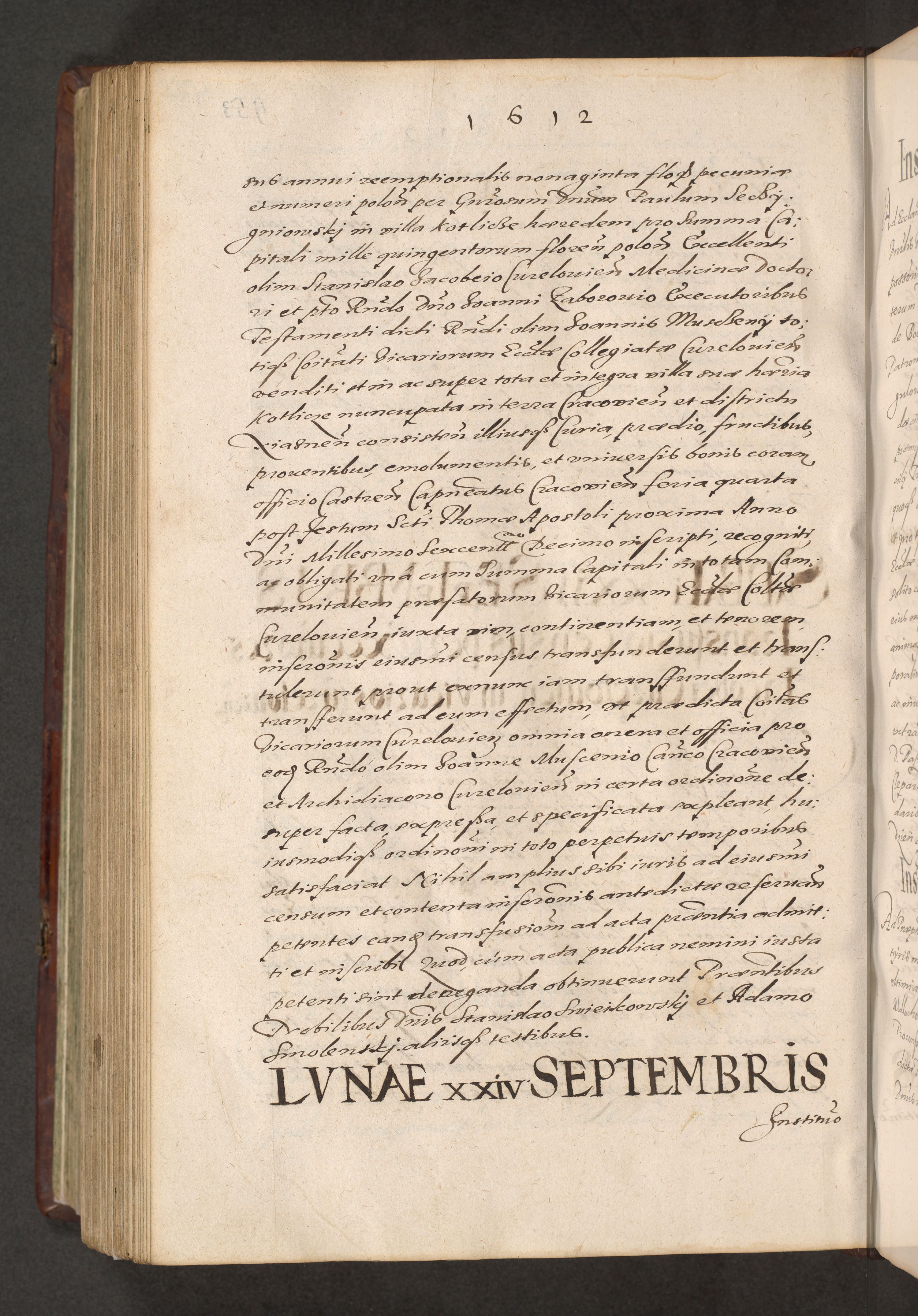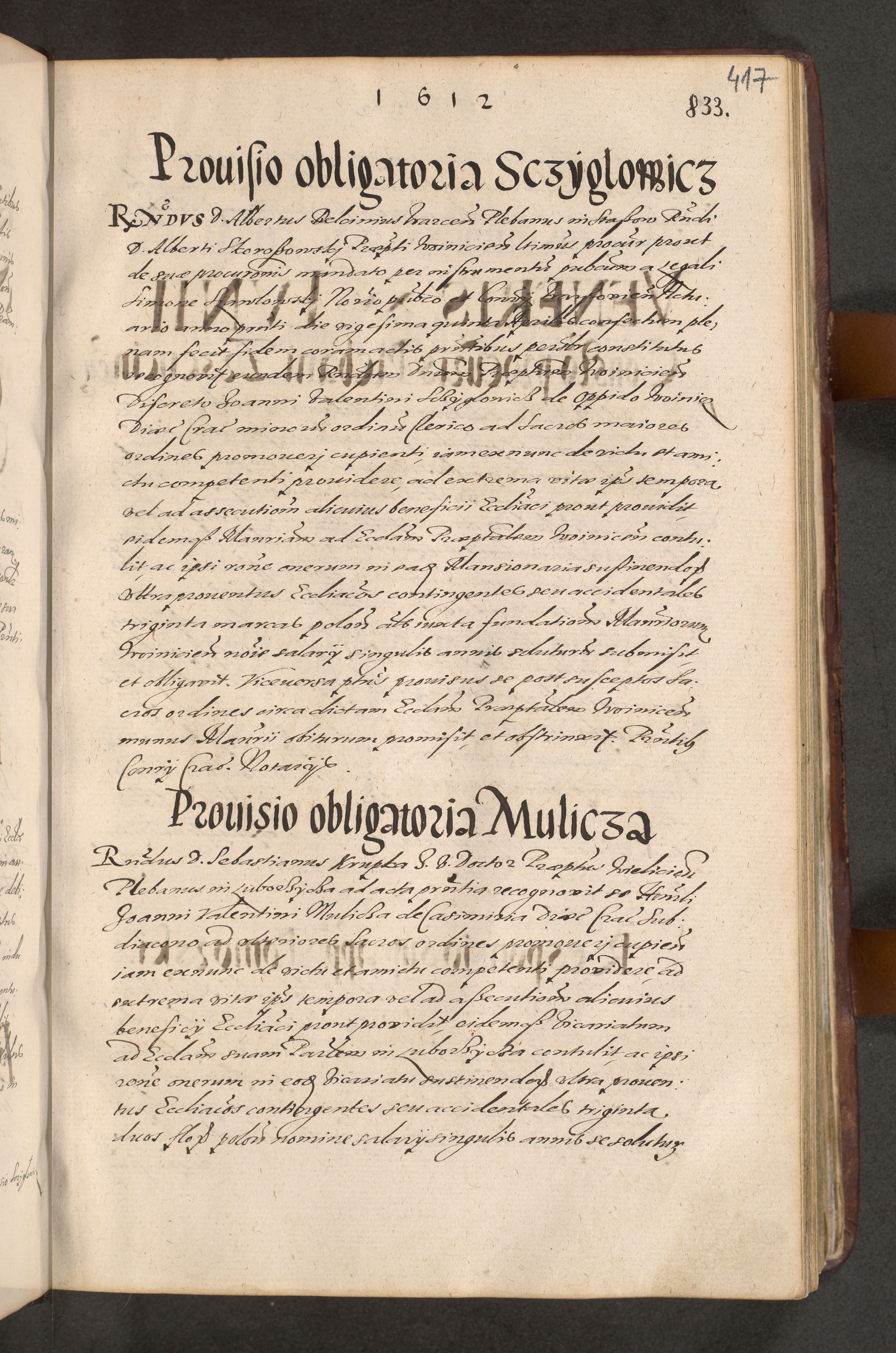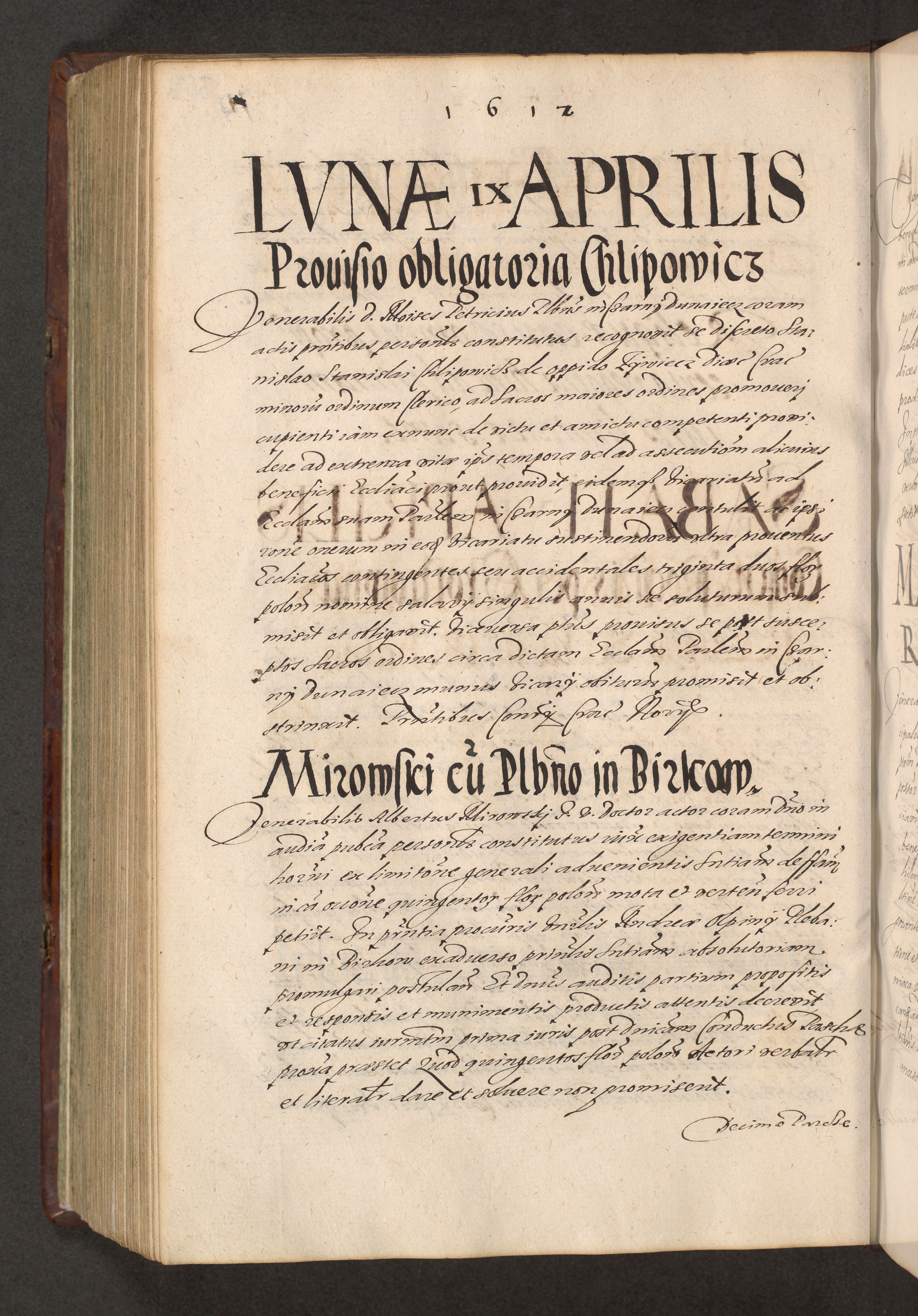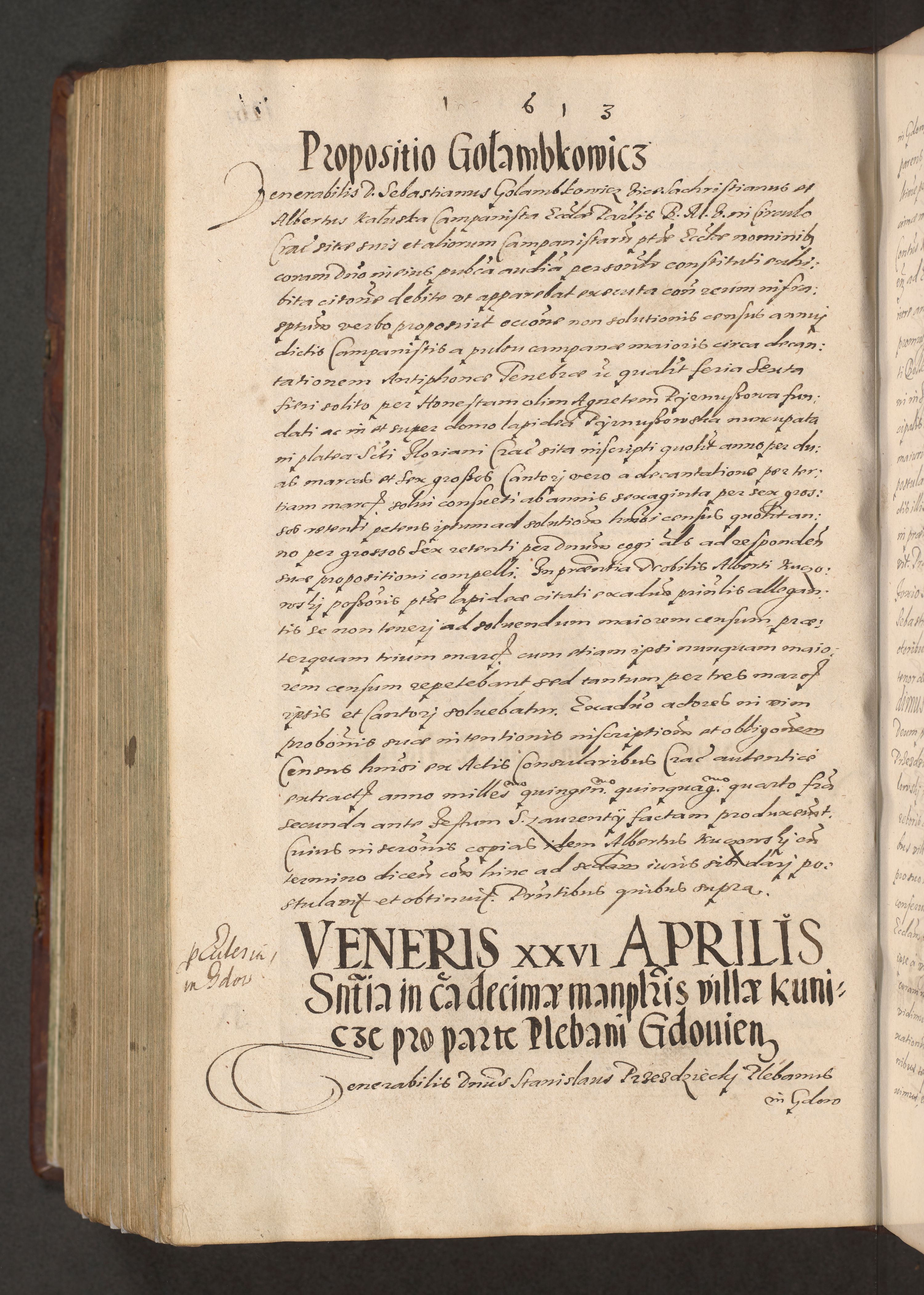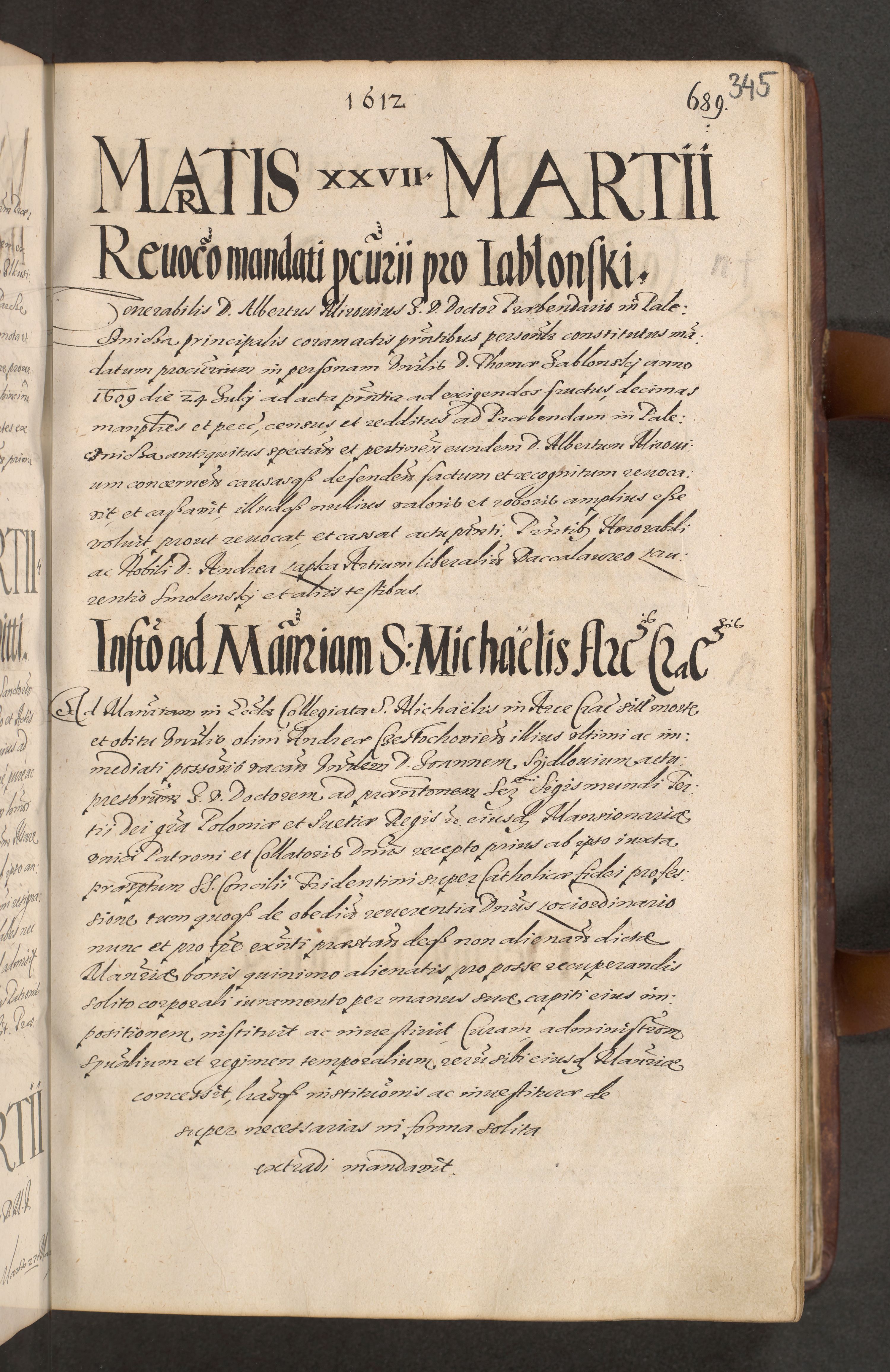 Acta actorum causarum sententiarum tam diffinitiuarum quam interloquutorisrum decretorum obligationum quietationum procuratorum constitutionum etc. etc. coram Reverendo Domino Paulo Dembski Dei et Apostolice Sedis Gratia Episcopalo Dicensis Suffraganeo Canonico Vicario in Spiritualibus et Officiali Generali Cracoviensis ad Annum Domini Millesimum Sexcentesimum Undecimum cuius indictio octava pontificatus Sanctissimi Domini Nostri Domini Pauli Divina Providentia Papae Vti foeliciter continuantur